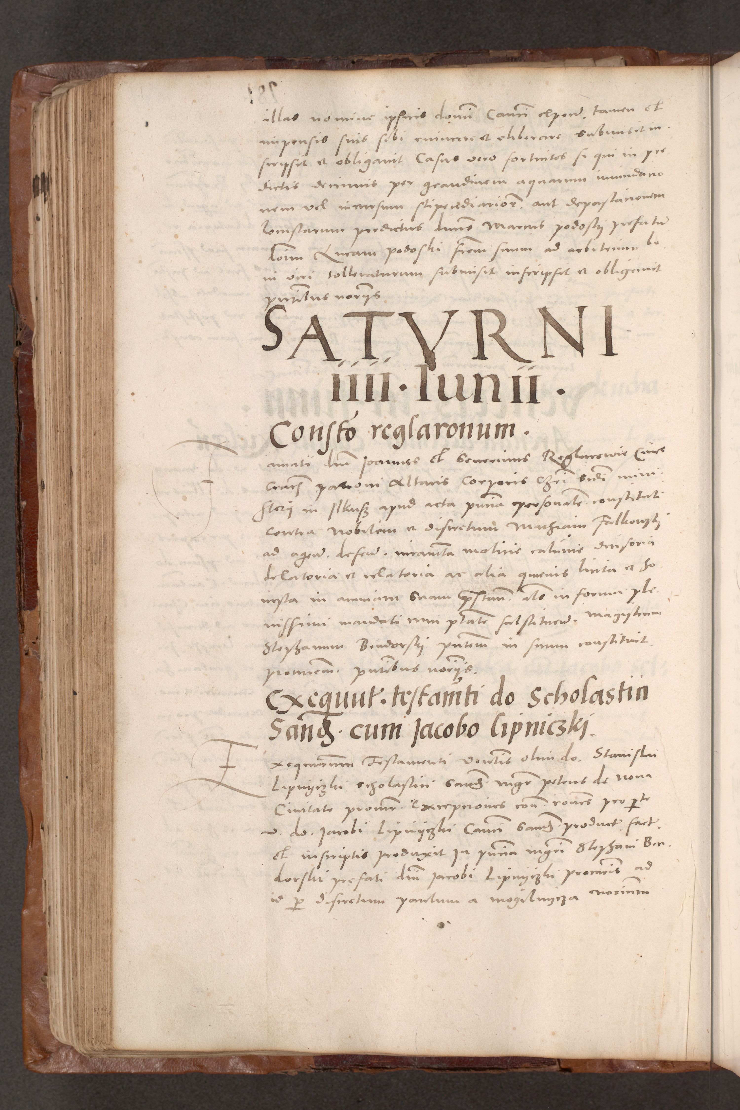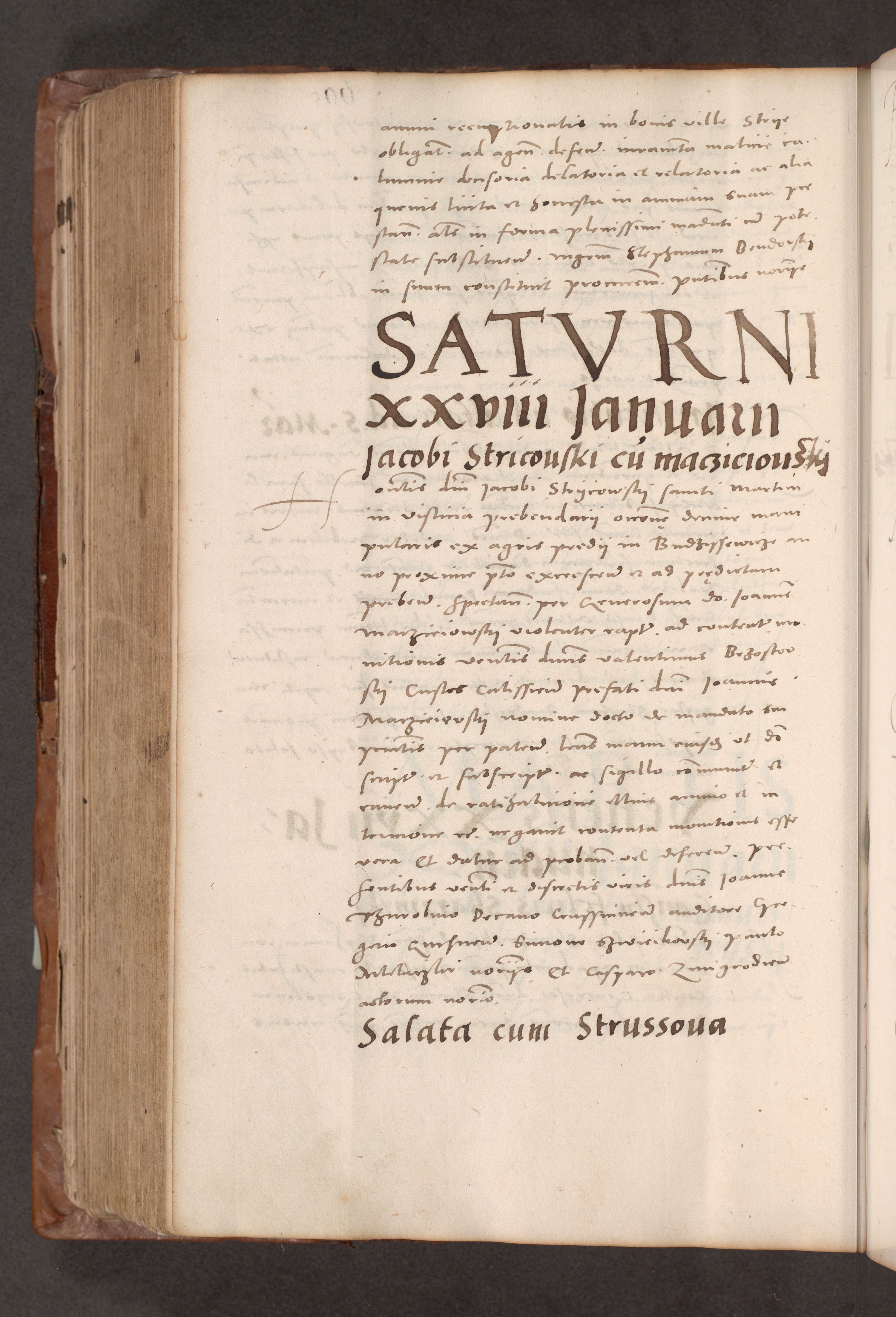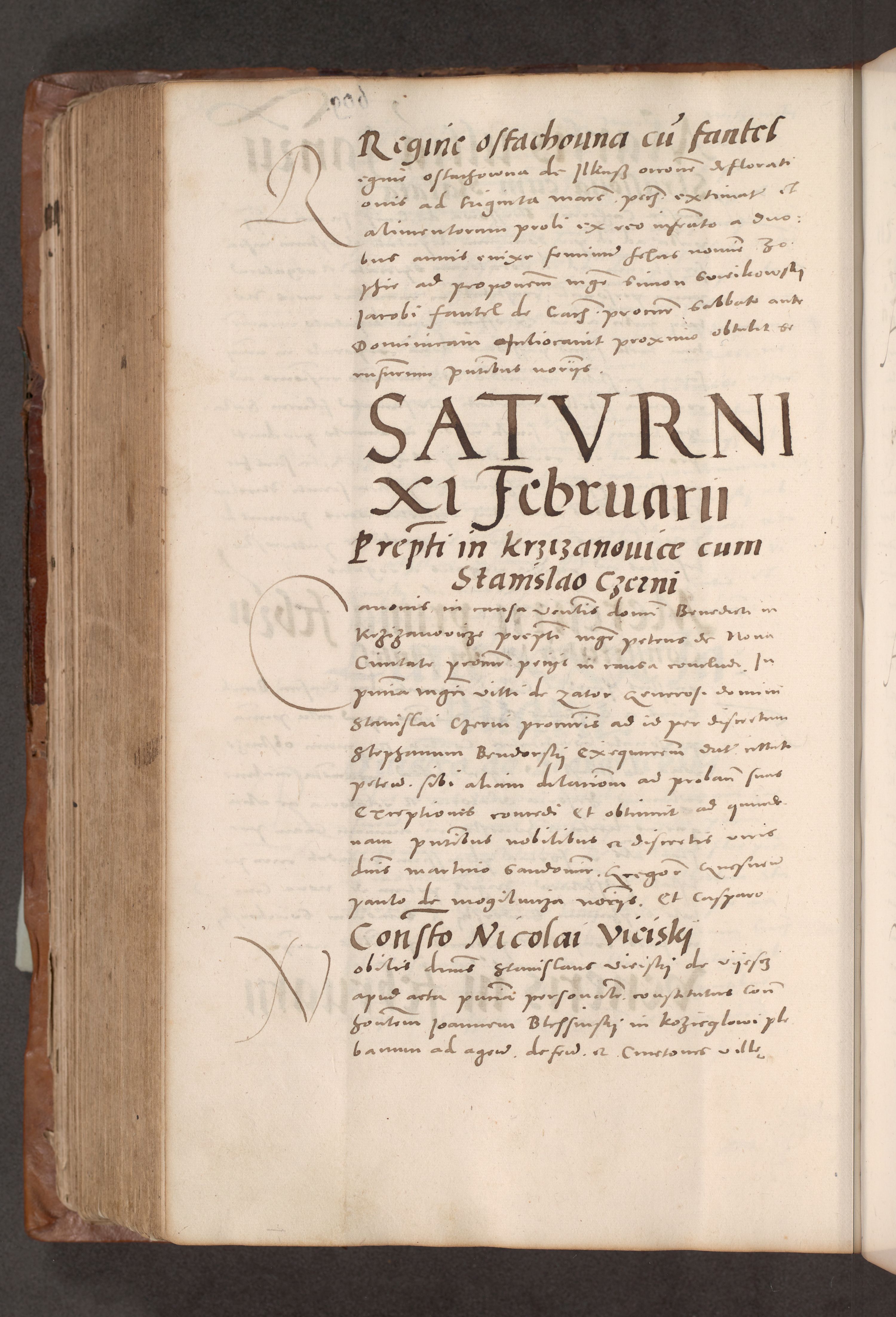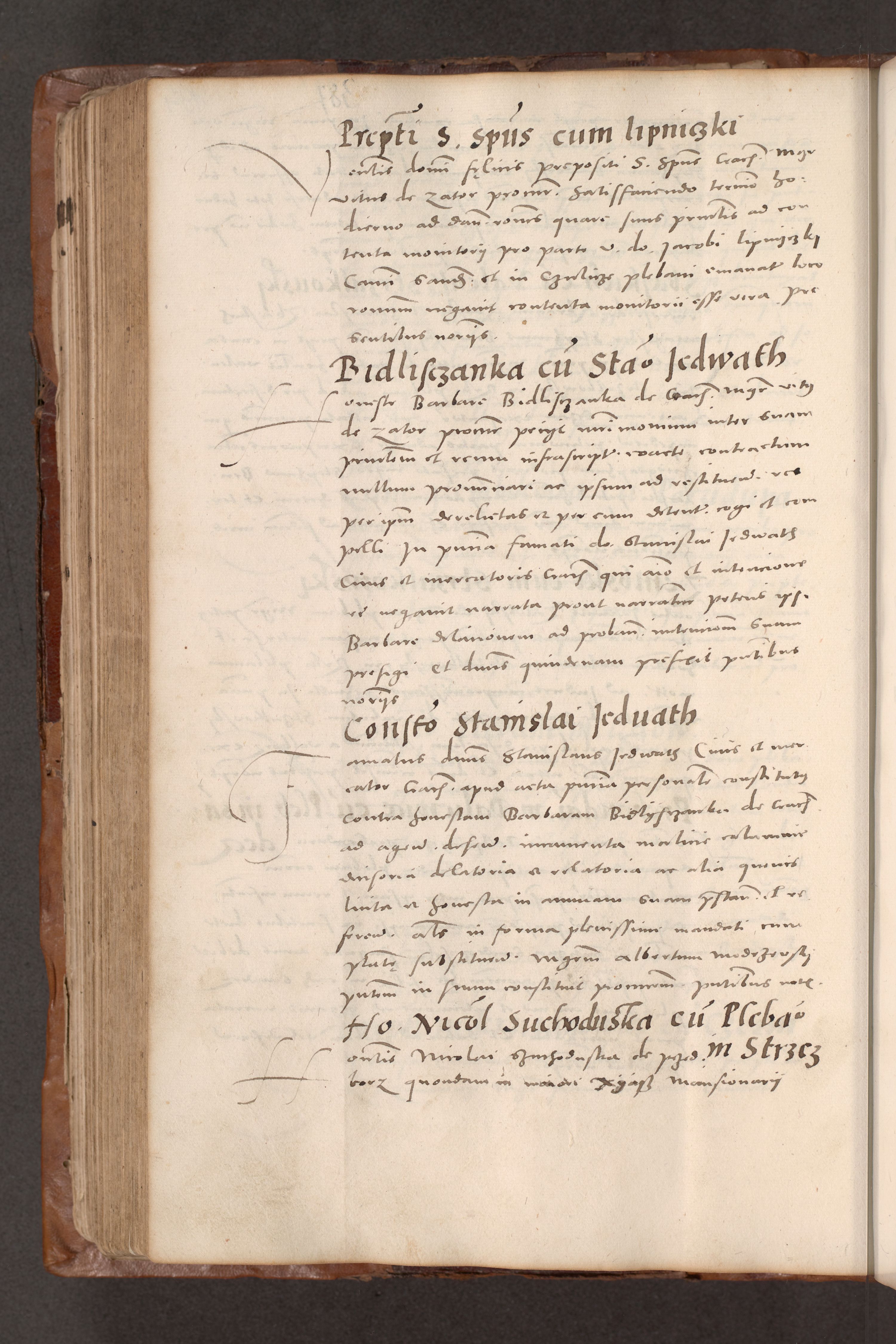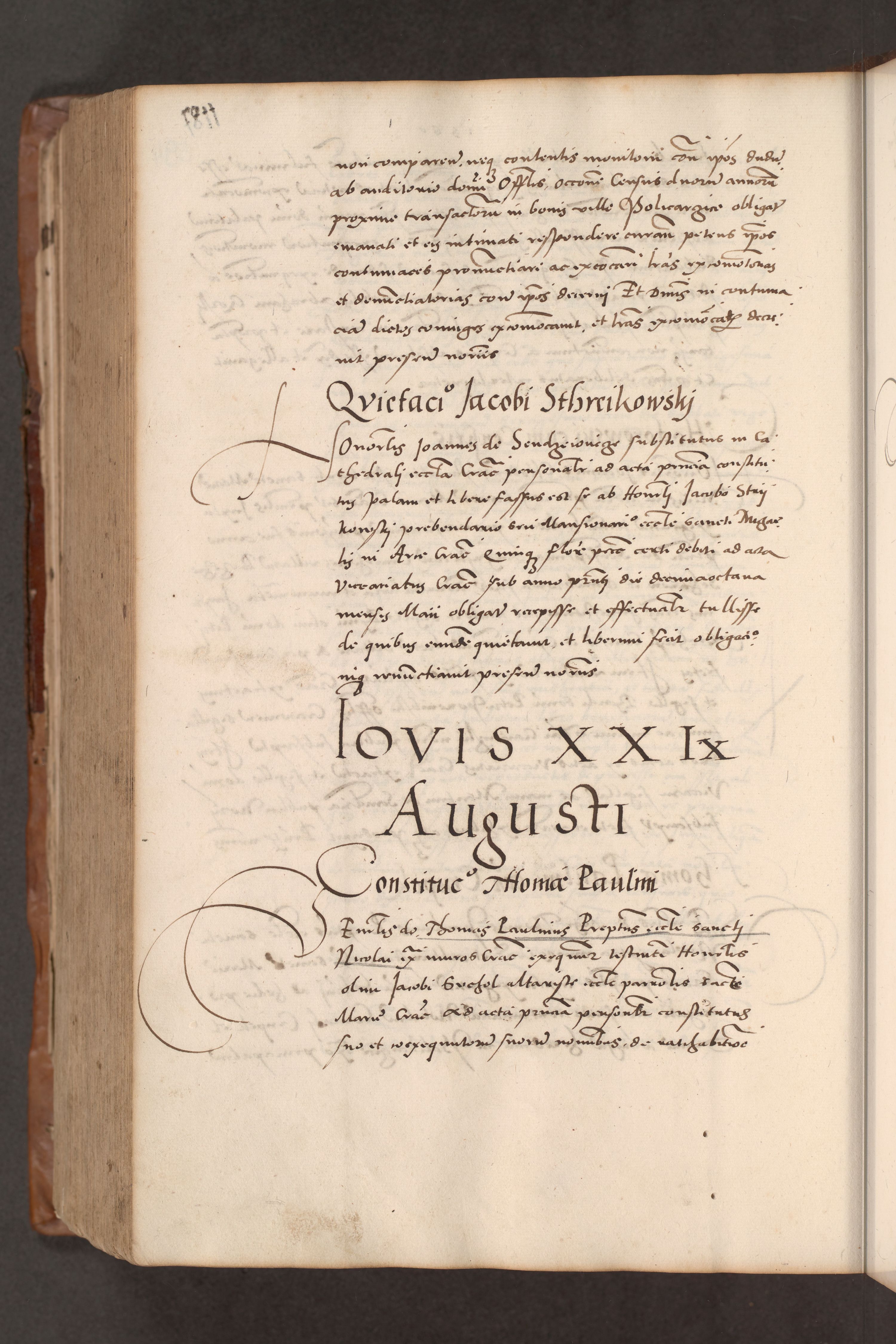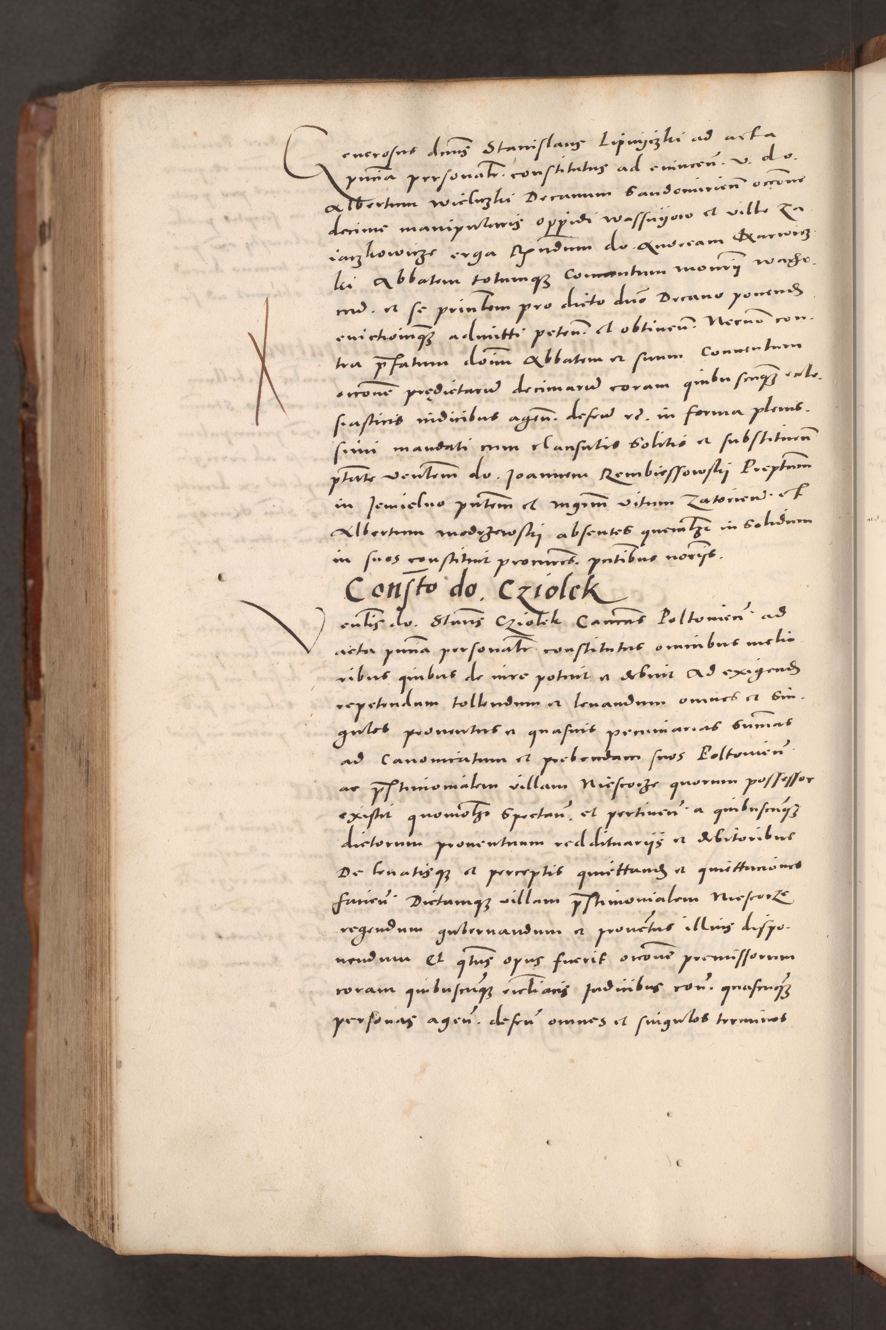 Acta actorum causarum, sententiarum tam diffinivarum quam interloquutoriarum, decretorum, obligationum, quietationum et constitutionum procuratorum coram reverendo domino Stanislao Szlomowski praeposito Calissieensi, archidiacono Sandecensi, canonico vicarioque in spiritualibus generali Cracoviensi ad annum Domini millesimum quingentesimum quinquagesimum octavum, cuius indicio prima, pontificatus sanctissimi domini nostri Pauli divina providencia pape quarti, anno illius tercio, feliciter sequuntur.