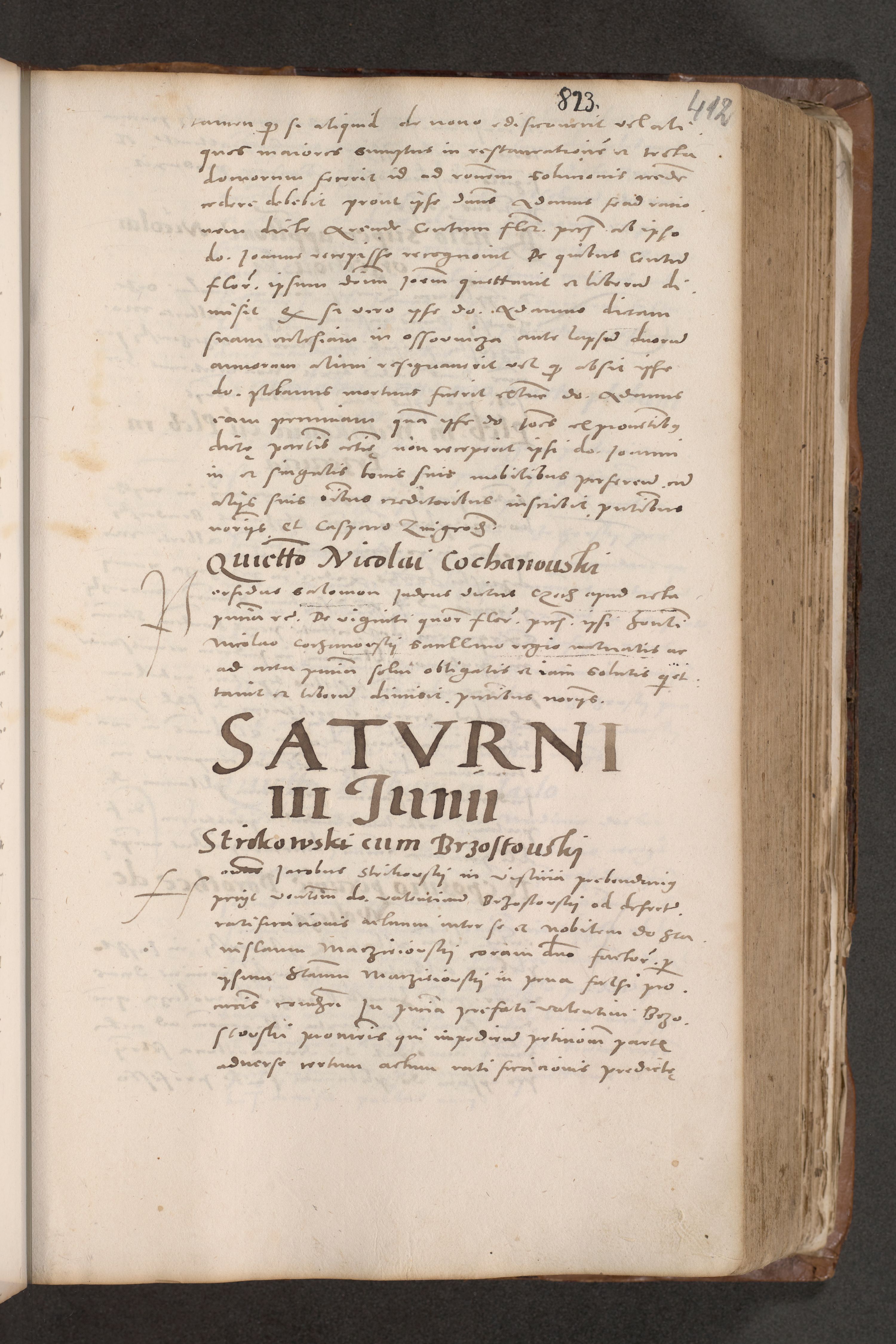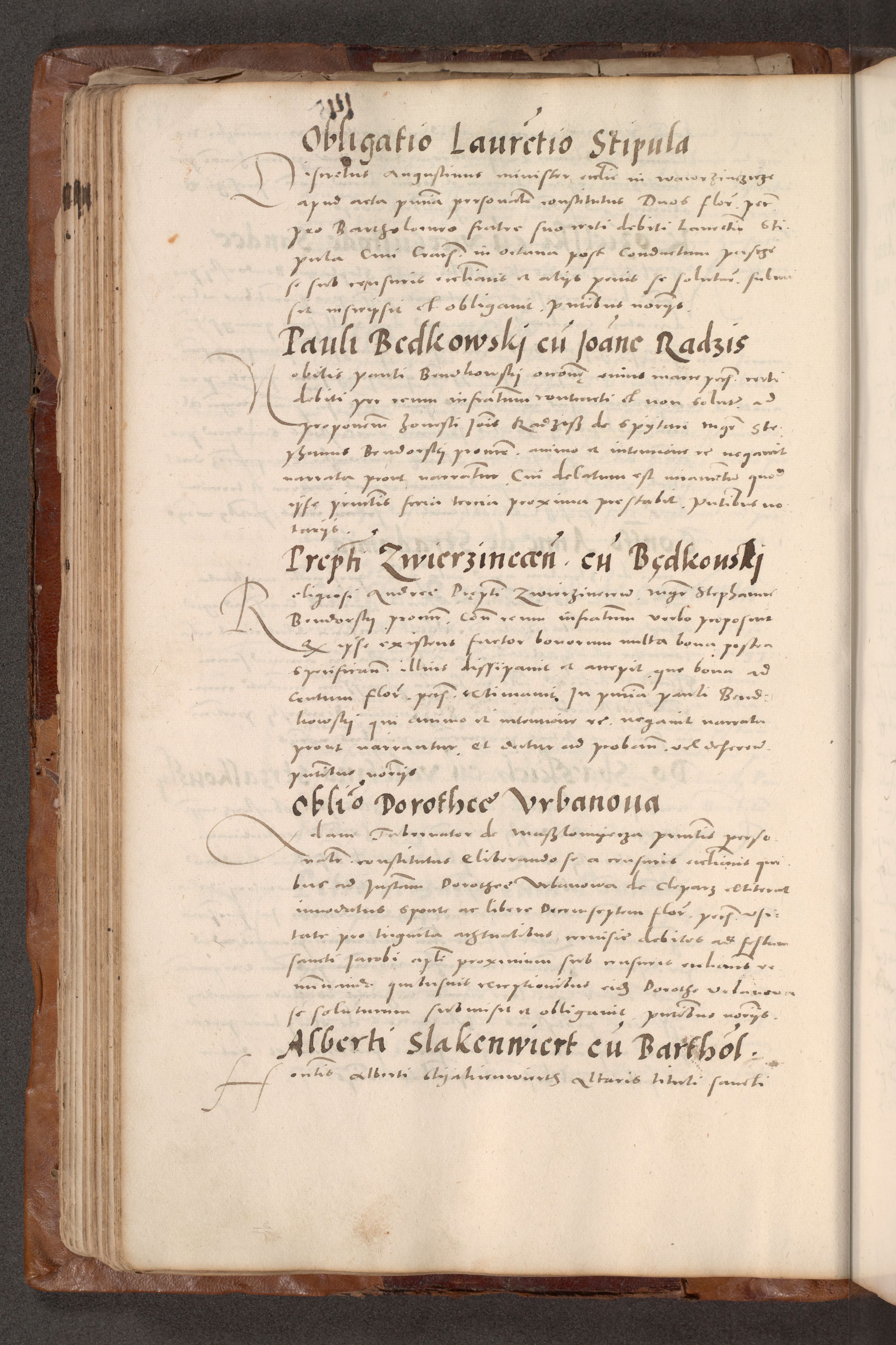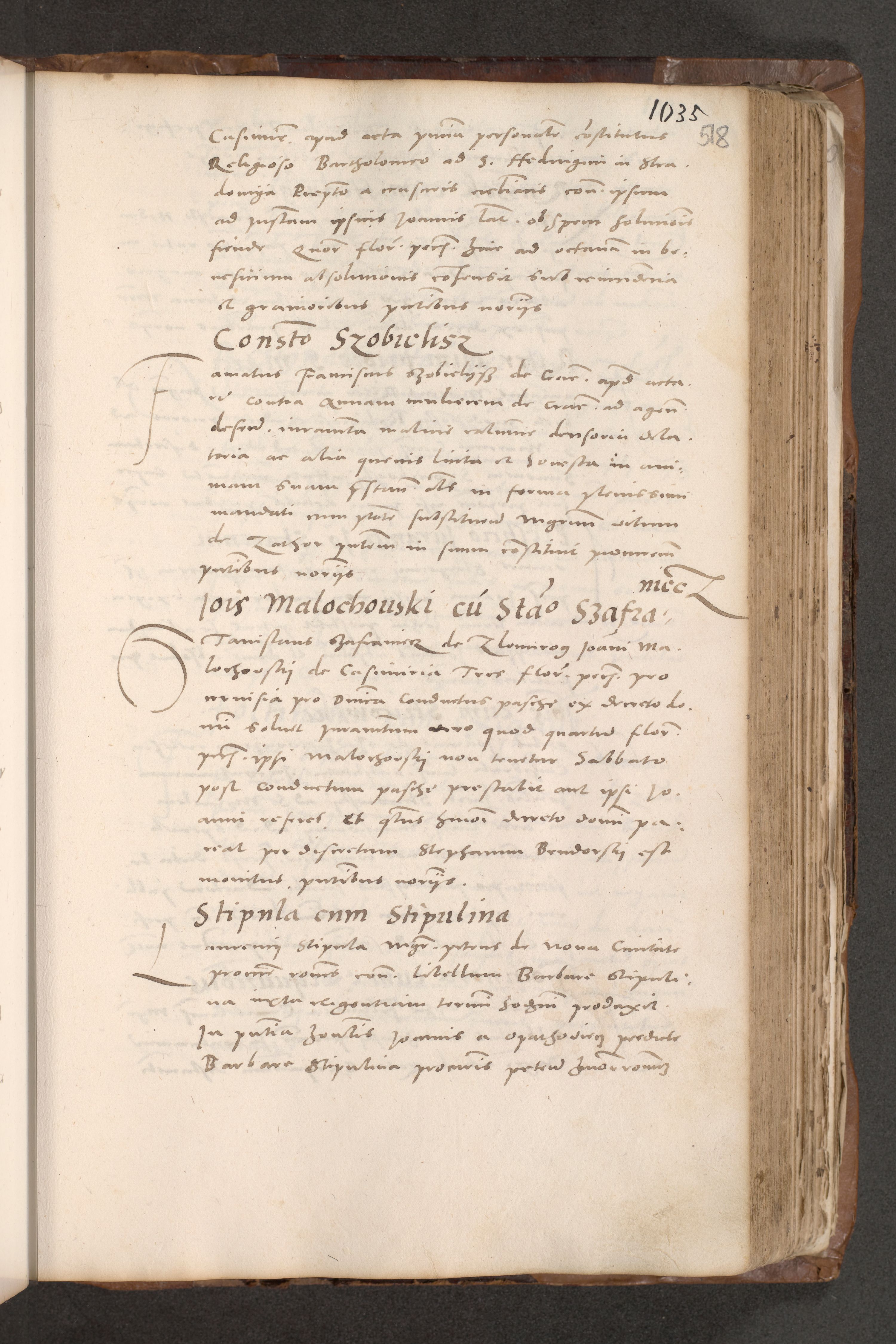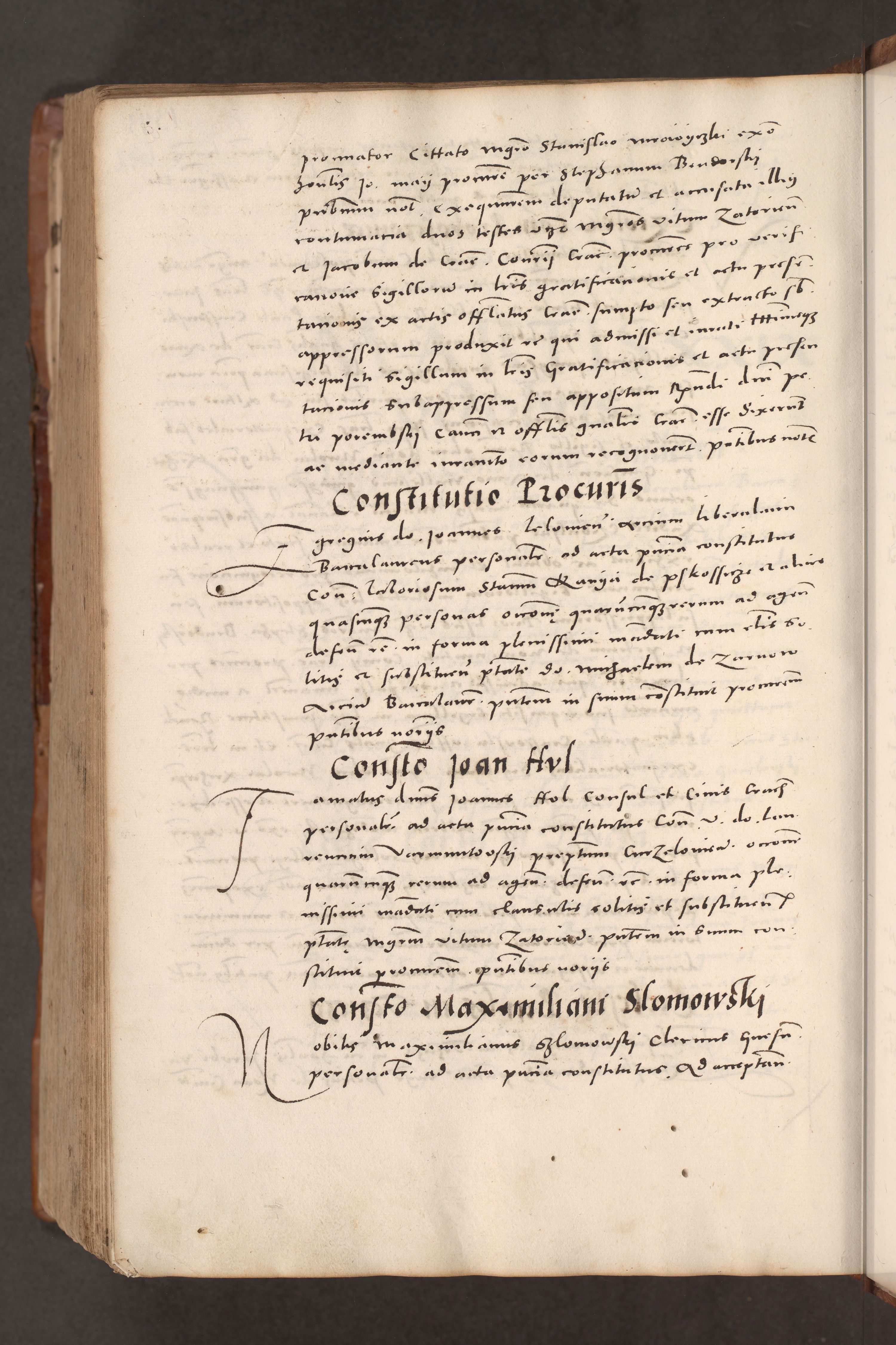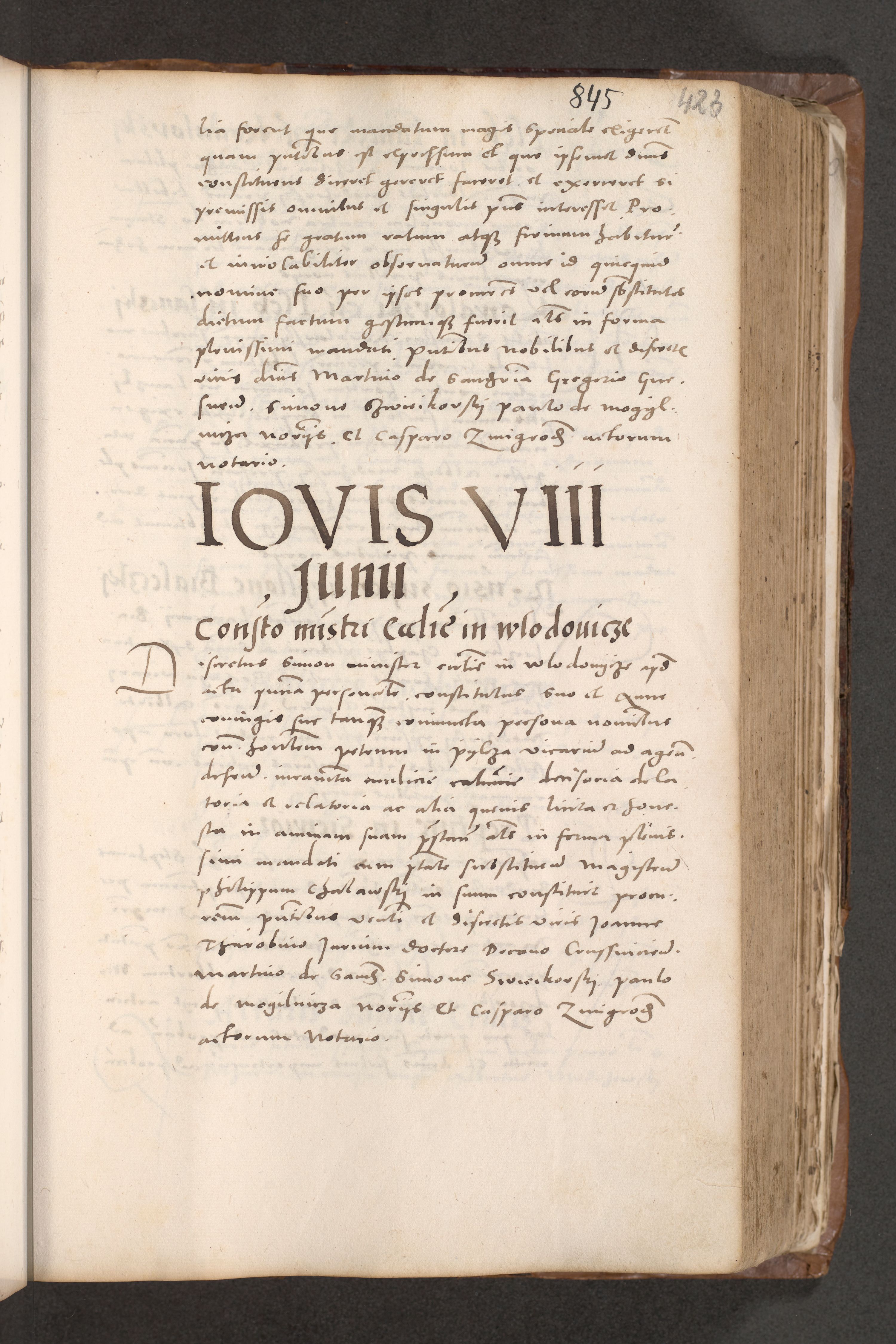 Acta actorum causarum, sententiarum tam diffinivarum quam interloquutoriarum, decretorum, obligationum, quietationum et constitutionum procuratorum coram reverendo domino Stanislao Szlomowski praeposito Calissieensi, archidiacono Sandecensi, canonico vicarioque in spiritualibus generali Cracoviensi ad annum Domini millesimum quingentesimum quinquagesimum octavum, cuius indicio prima, pontificatus sanctissimi domini nostri Pauli divina providencia pape quarti, anno illius tercio, feliciter sequuntur.