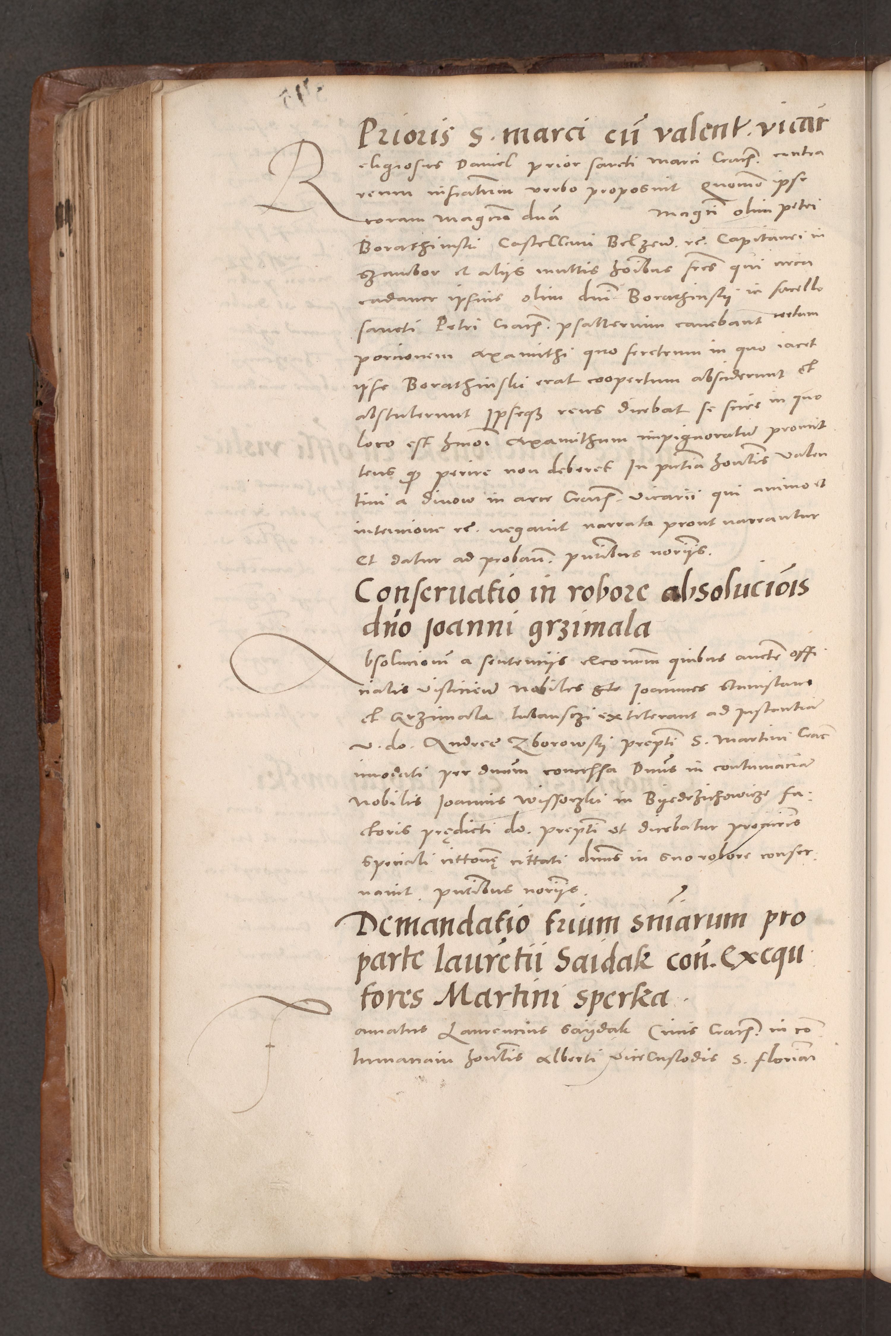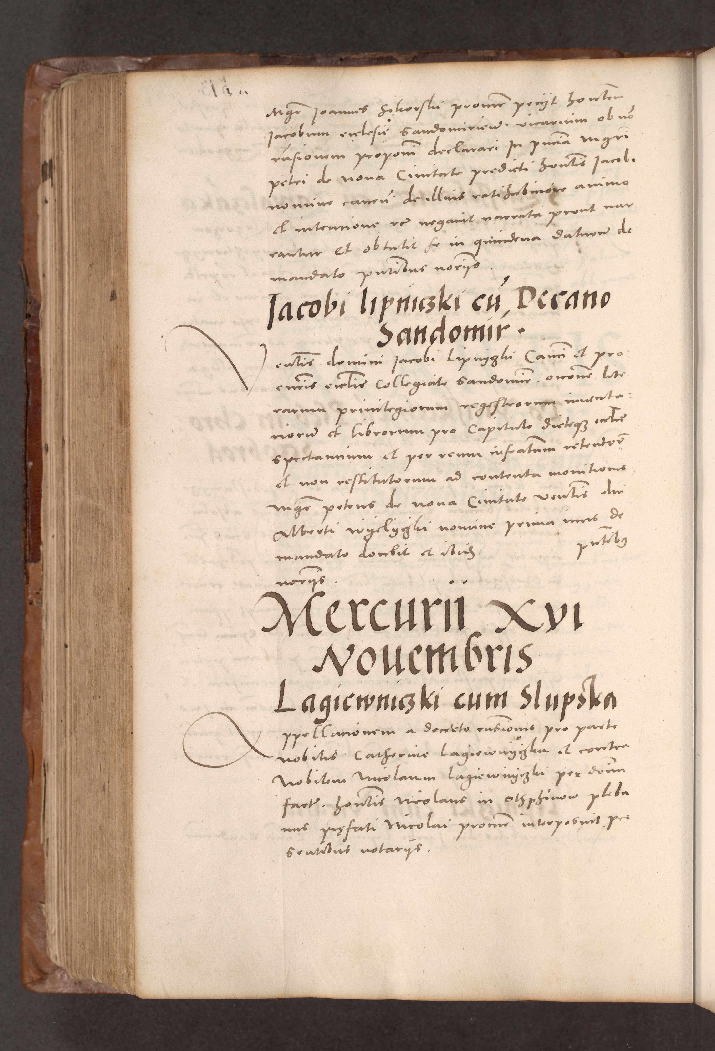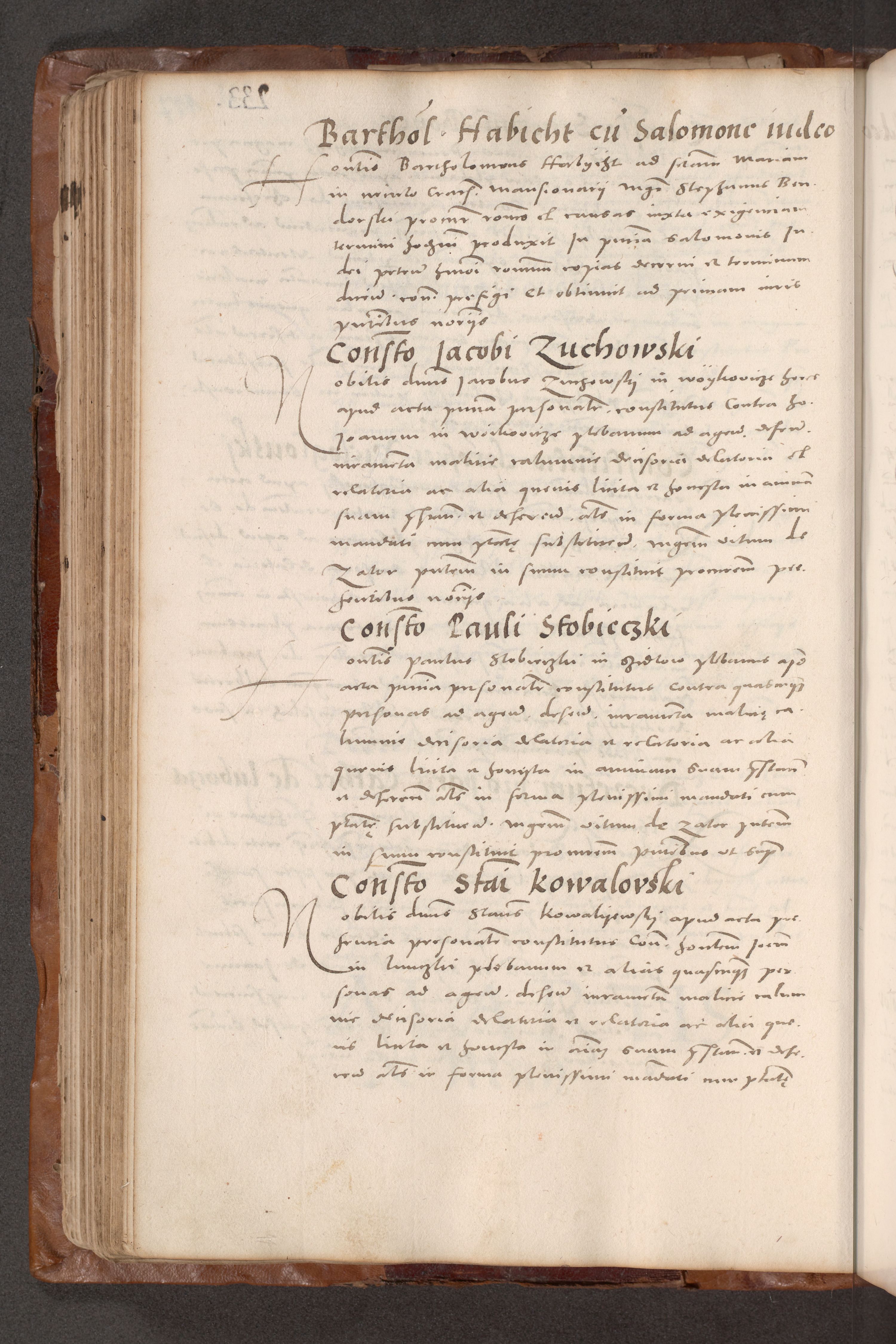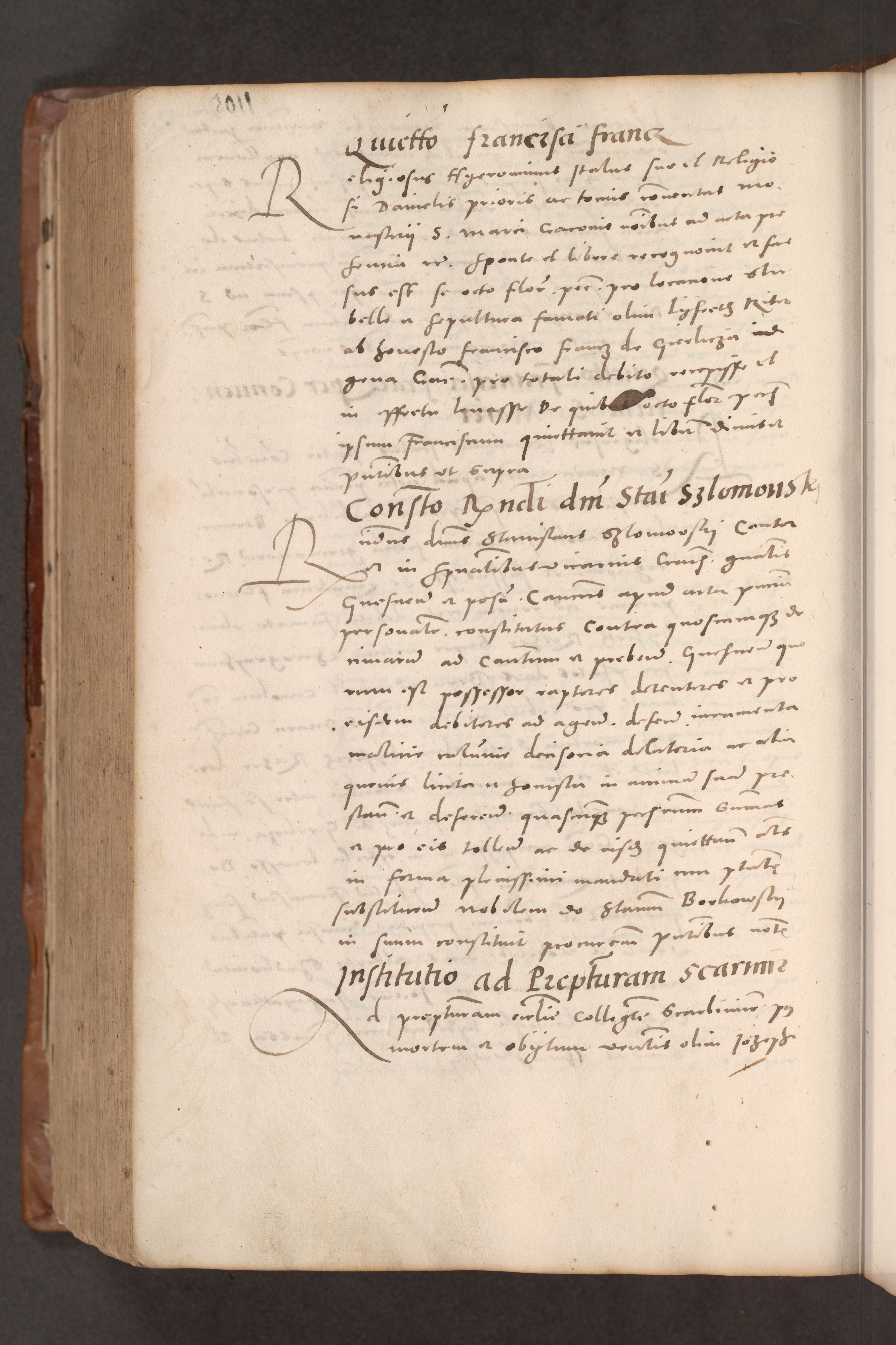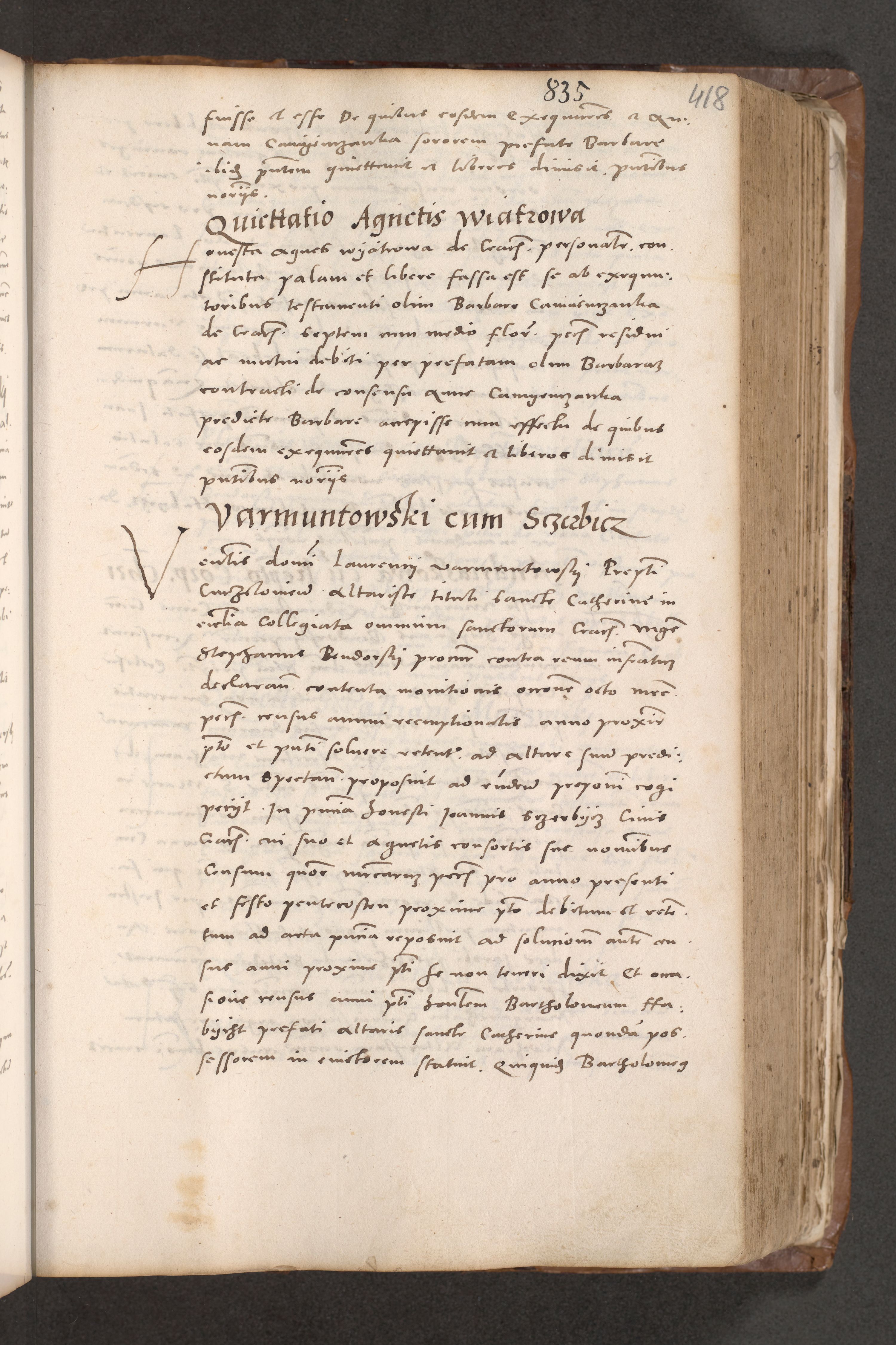 Acta actorum causarum, sententiarum tam diffinivarum quam interloquutoriarum, decretorum, obligationum, quietationum et constitutionum procuratorum coram reverendo domino Stanislao Szlomowski praeposito Calissieensi, archidiacono Sandecensi, canonico vicarioque in spiritualibus generali Cracoviensi ad annum Domini millesimum quingentesimum quinquagesimum octavum, cuius indicio prima, pontificatus sanctissimi domini nostri Pauli divina providencia pape quarti, anno illius tercio, feliciter sequuntur.