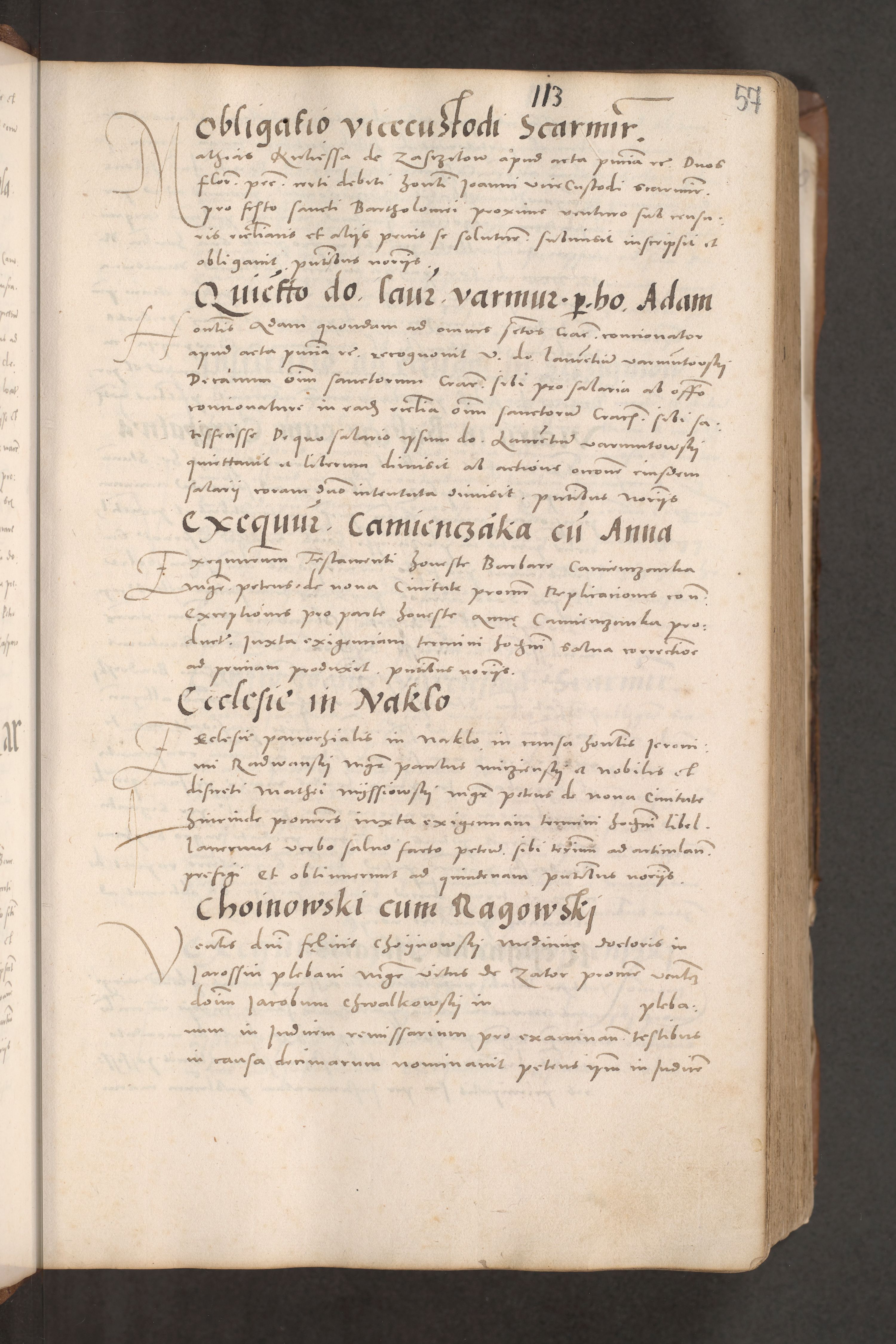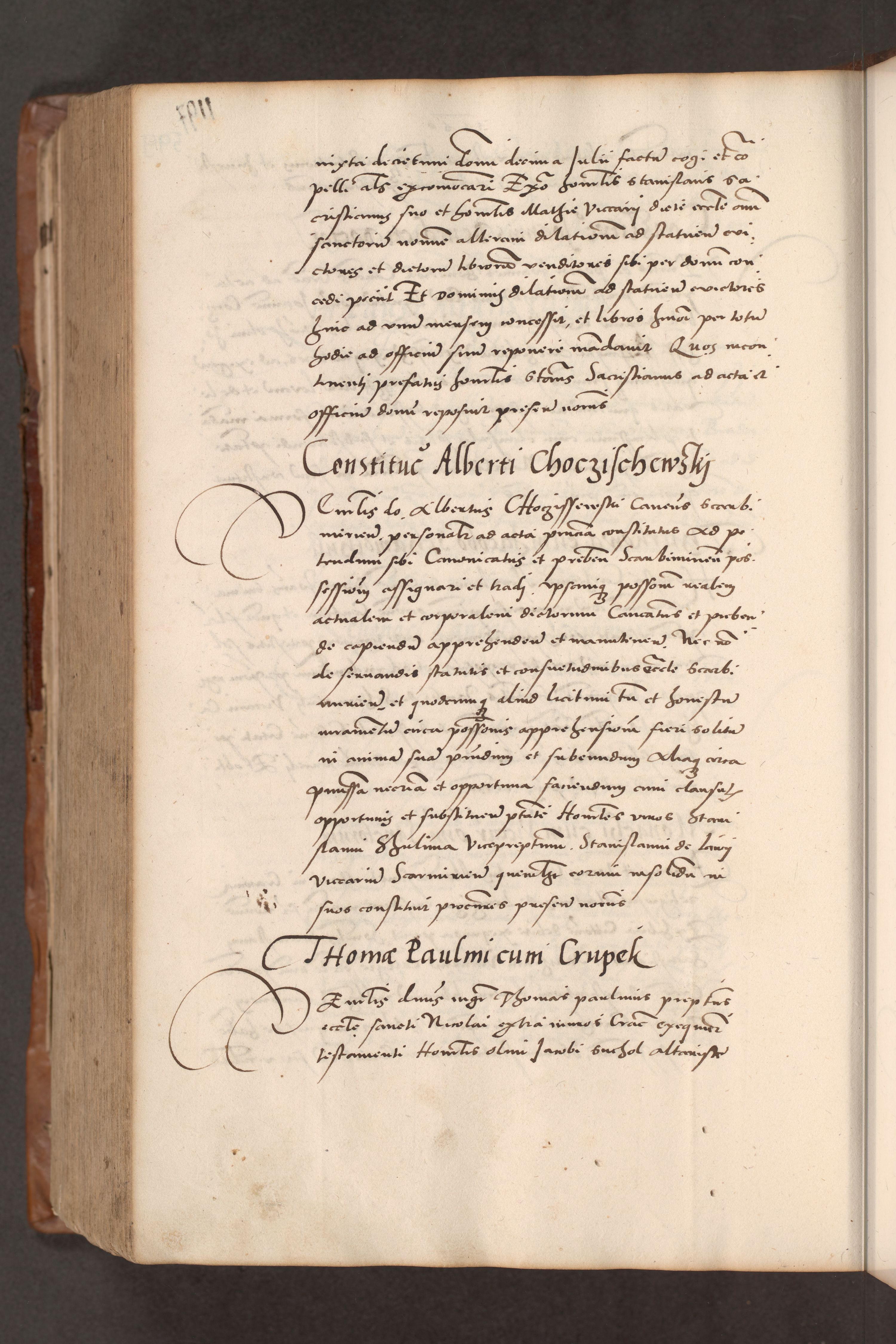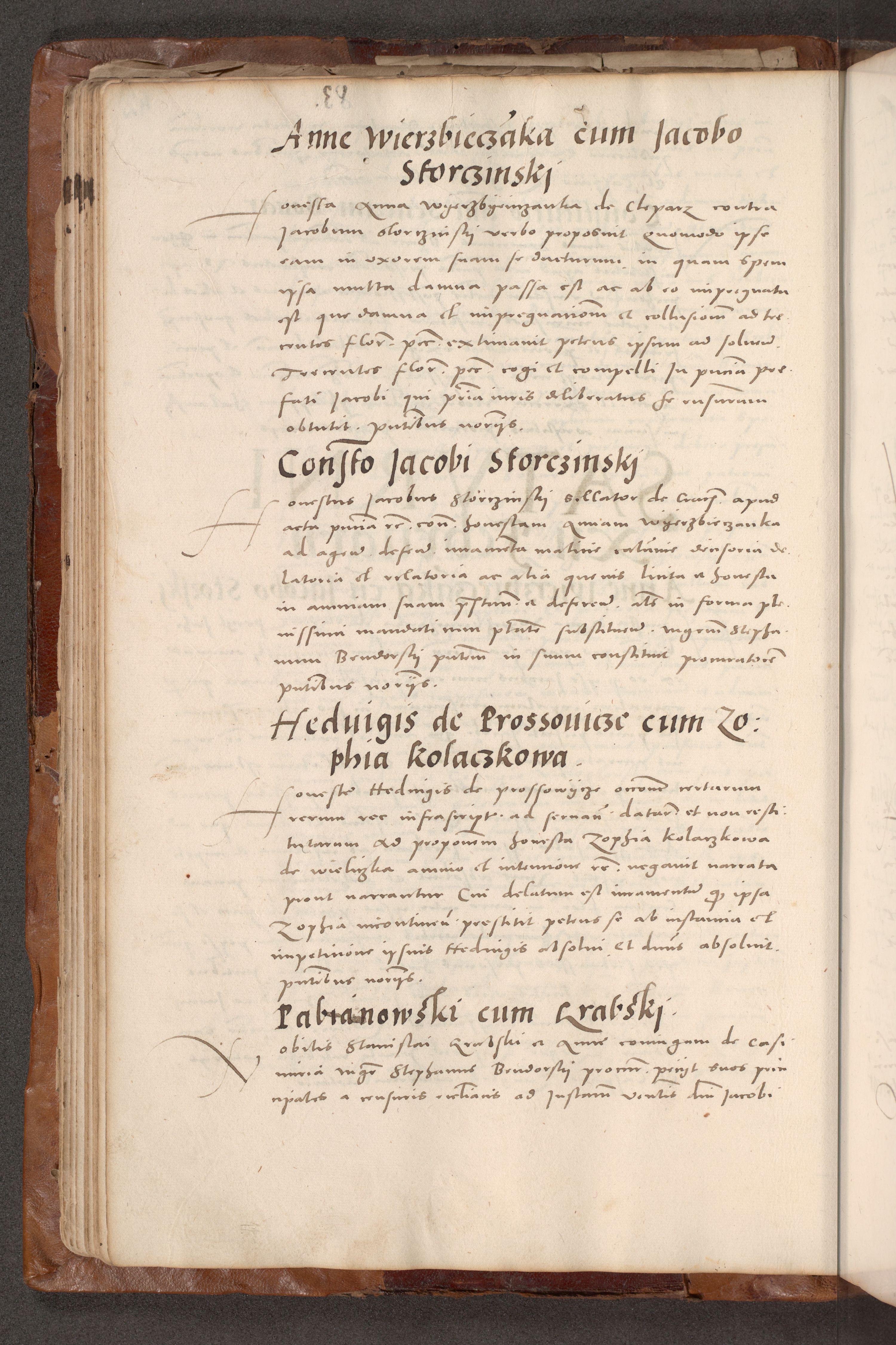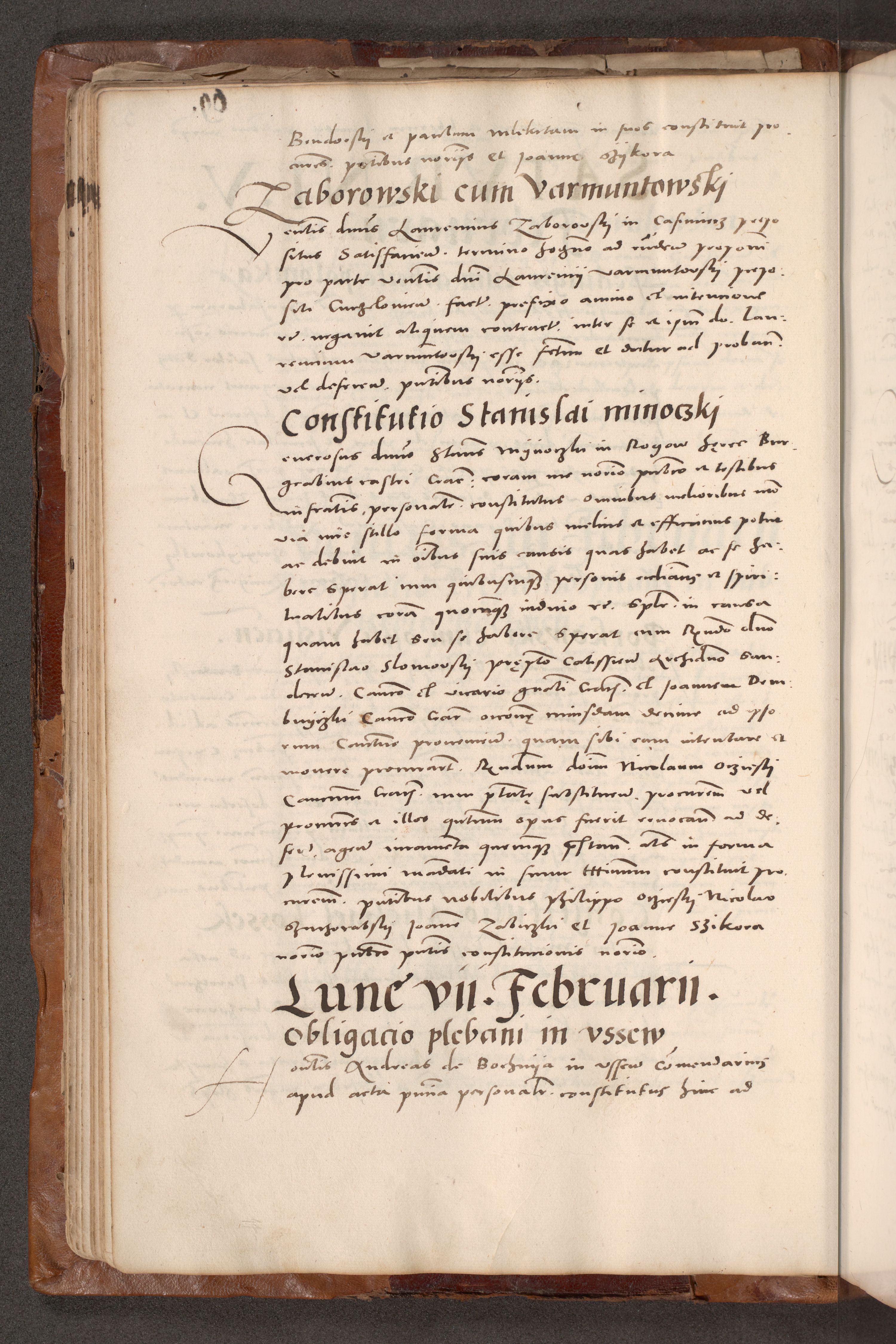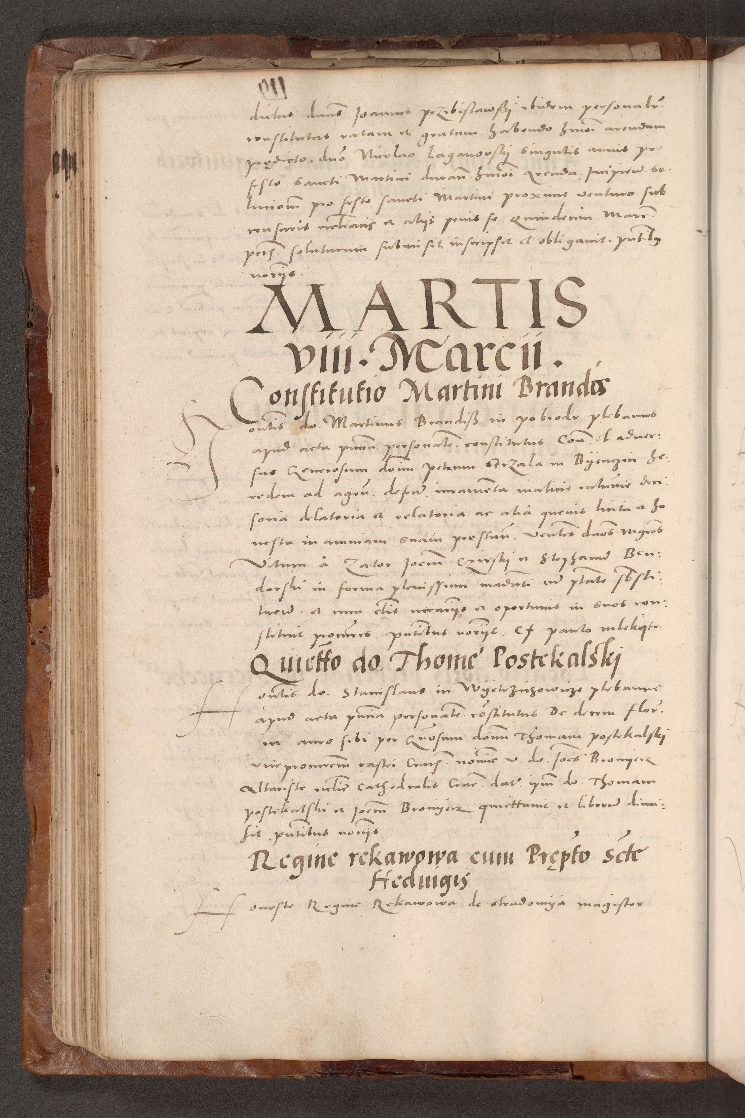 Acta actorum causarum, sententiarum tam diffinivarum quam interloquutoriarum, decretorum, obligationum, quietationum et constitutionum procuratorum coram reverendo domino Stanislao Szlomowski praeposito Calissieensi, archidiacono Sandecensi, canonico vicarioque in spiritualibus generali Cracoviensi ad annum Domini millesimum quingentesimum quinquagesimum octavum, cuius indicio prima, pontificatus sanctissimi domini nostri Pauli divina providencia pape quarti, anno illius tercio, feliciter sequuntur.