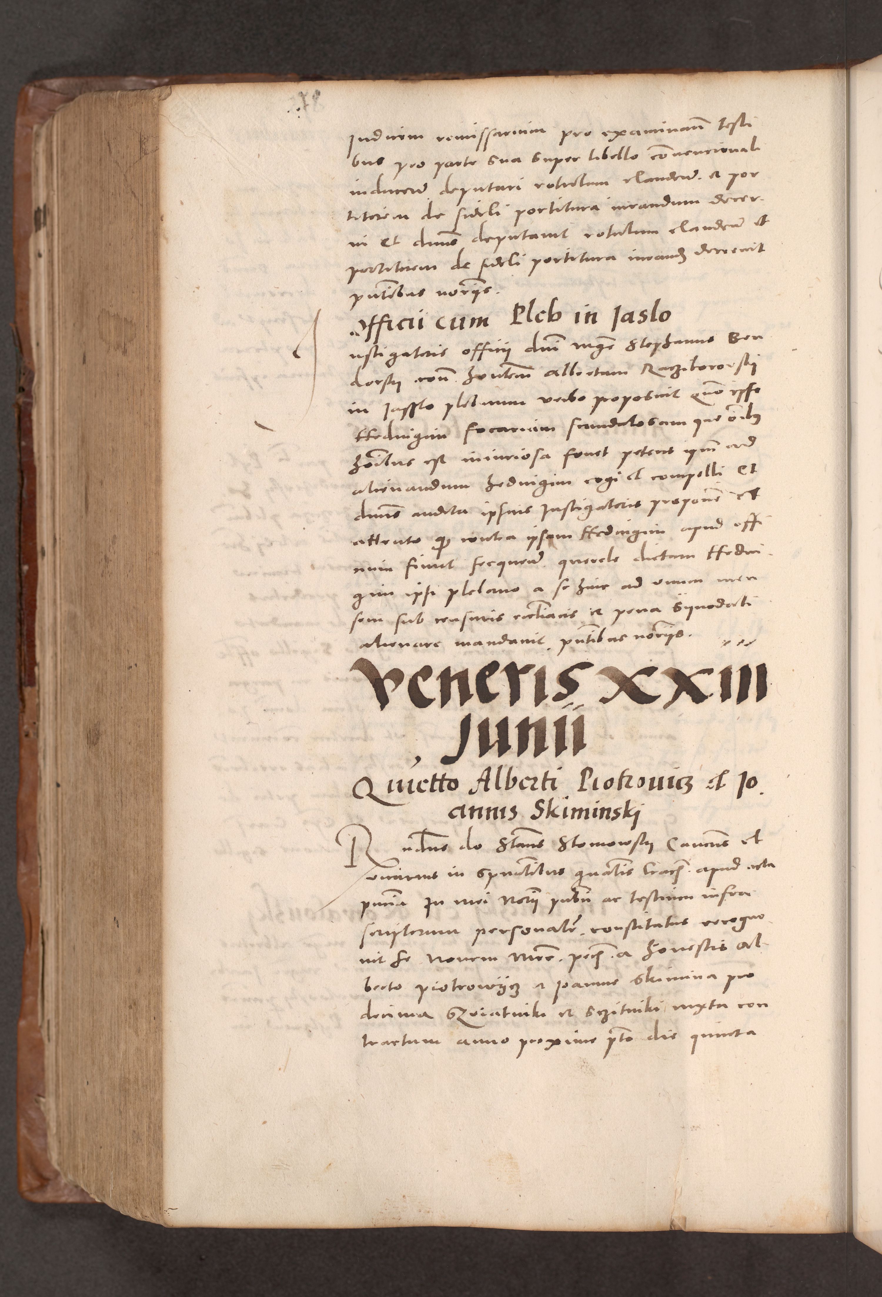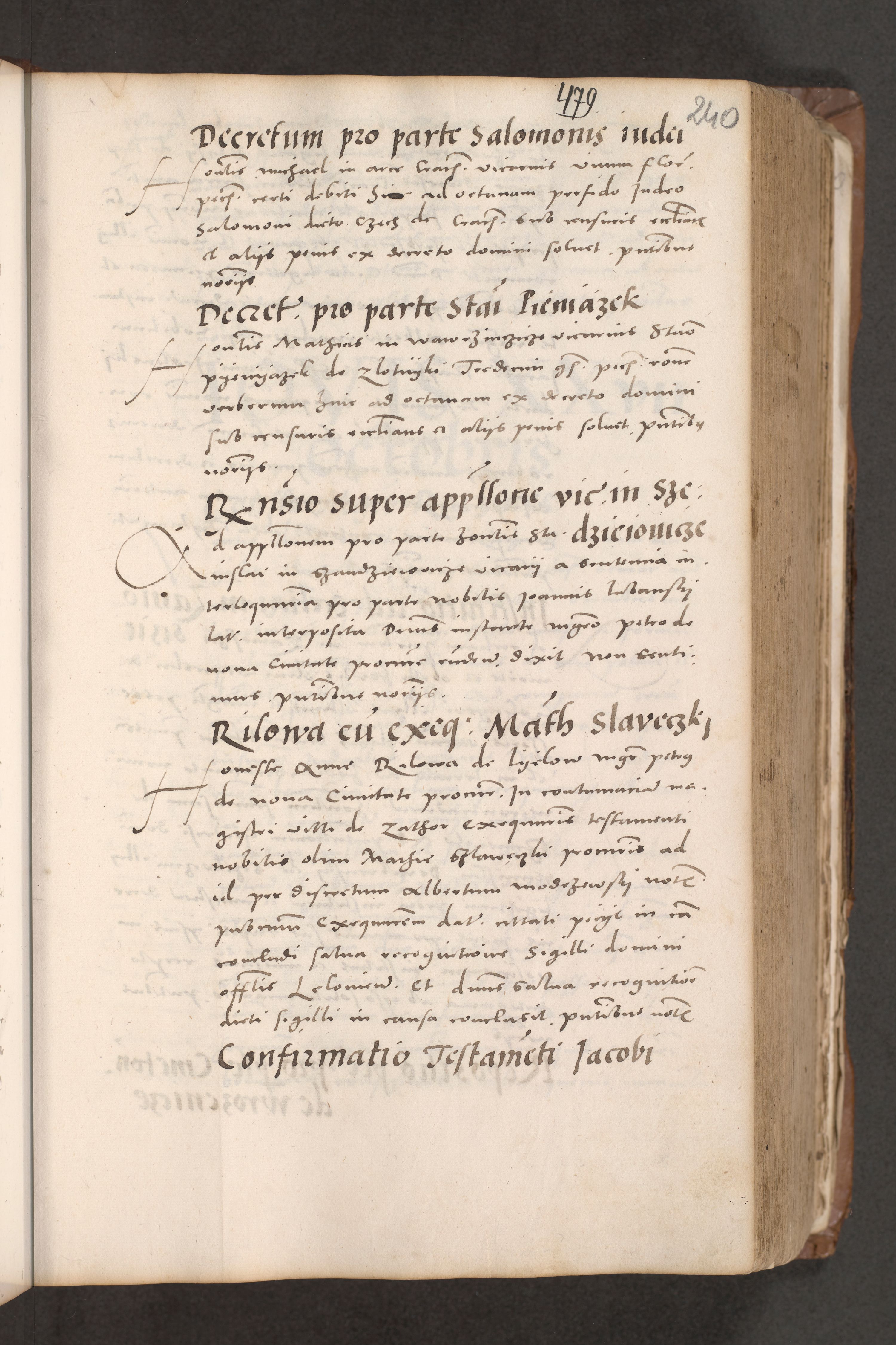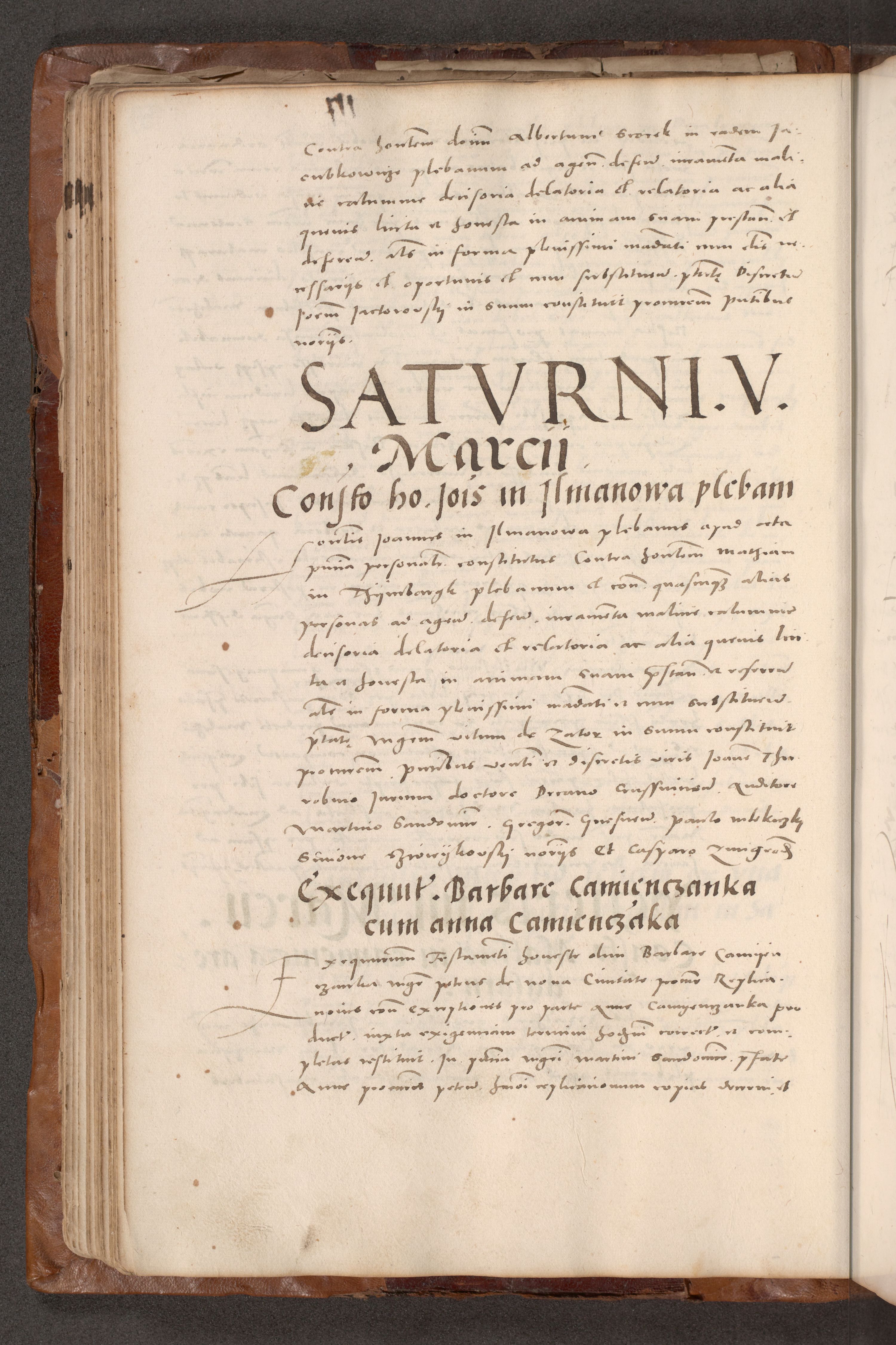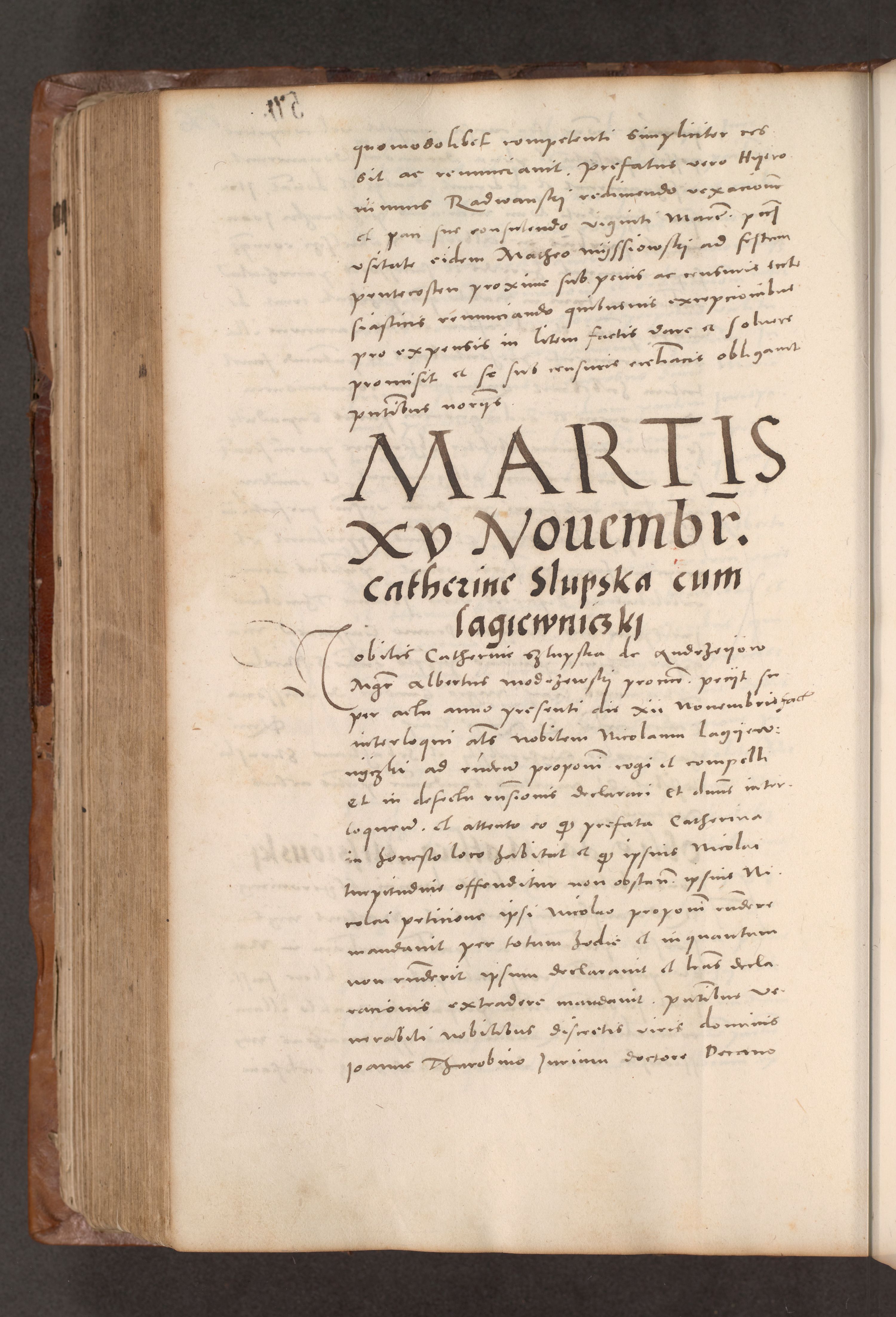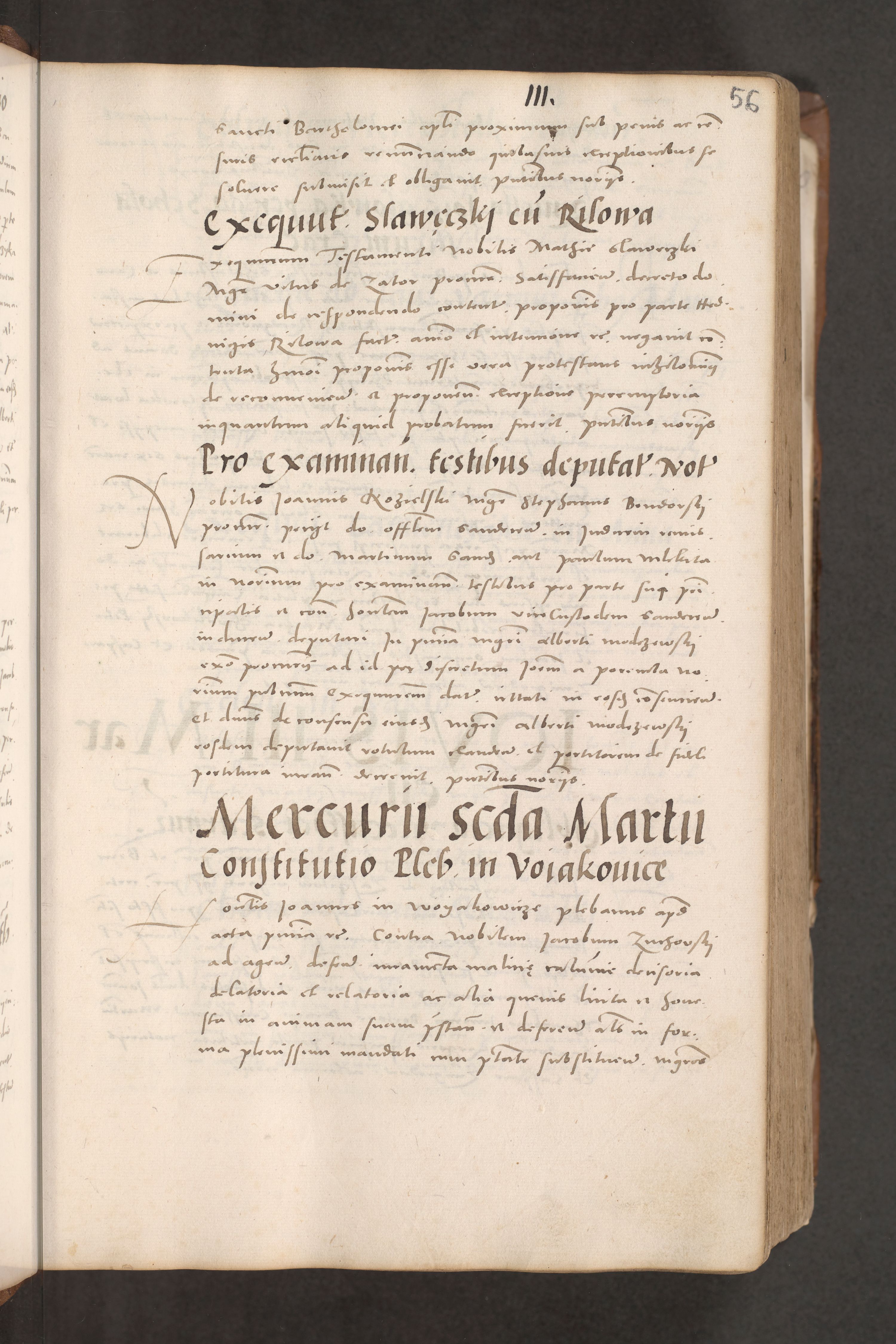 Acta actorum causarum, sententiarum tam diffinivarum quam interloquutoriarum, decretorum, obligationum, quietationum et constitutionum procuratorum coram reverendo domino Stanislao Szlomowski praeposito Calissieensi, archidiacono Sandecensi, canonico vicarioque in spiritualibus generali Cracoviensi ad annum Domini millesimum quingentesimum quinquagesimum octavum, cuius indicio prima, pontificatus sanctissimi domini nostri Pauli divina providencia pape quarti, anno illius tercio, feliciter sequuntur.