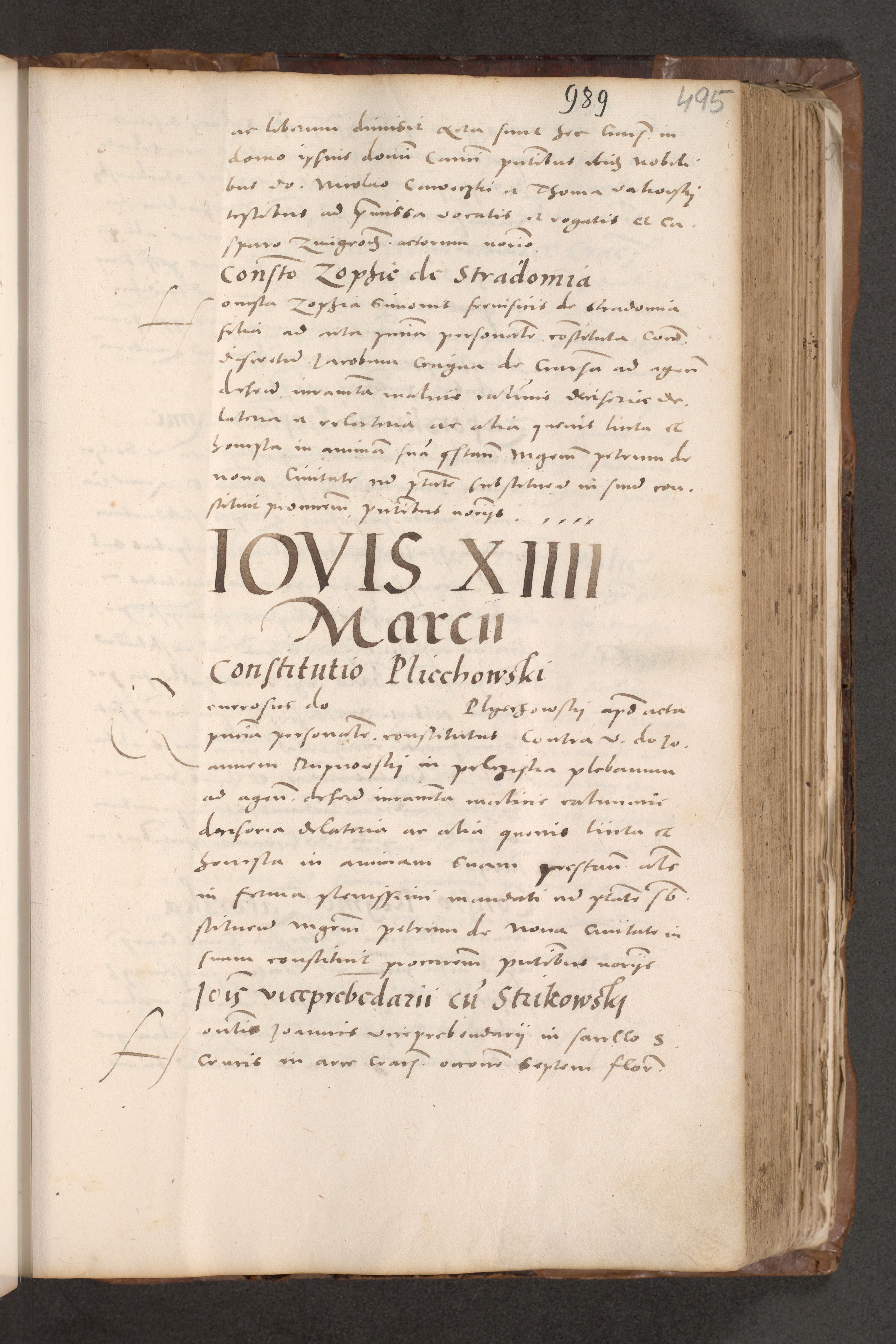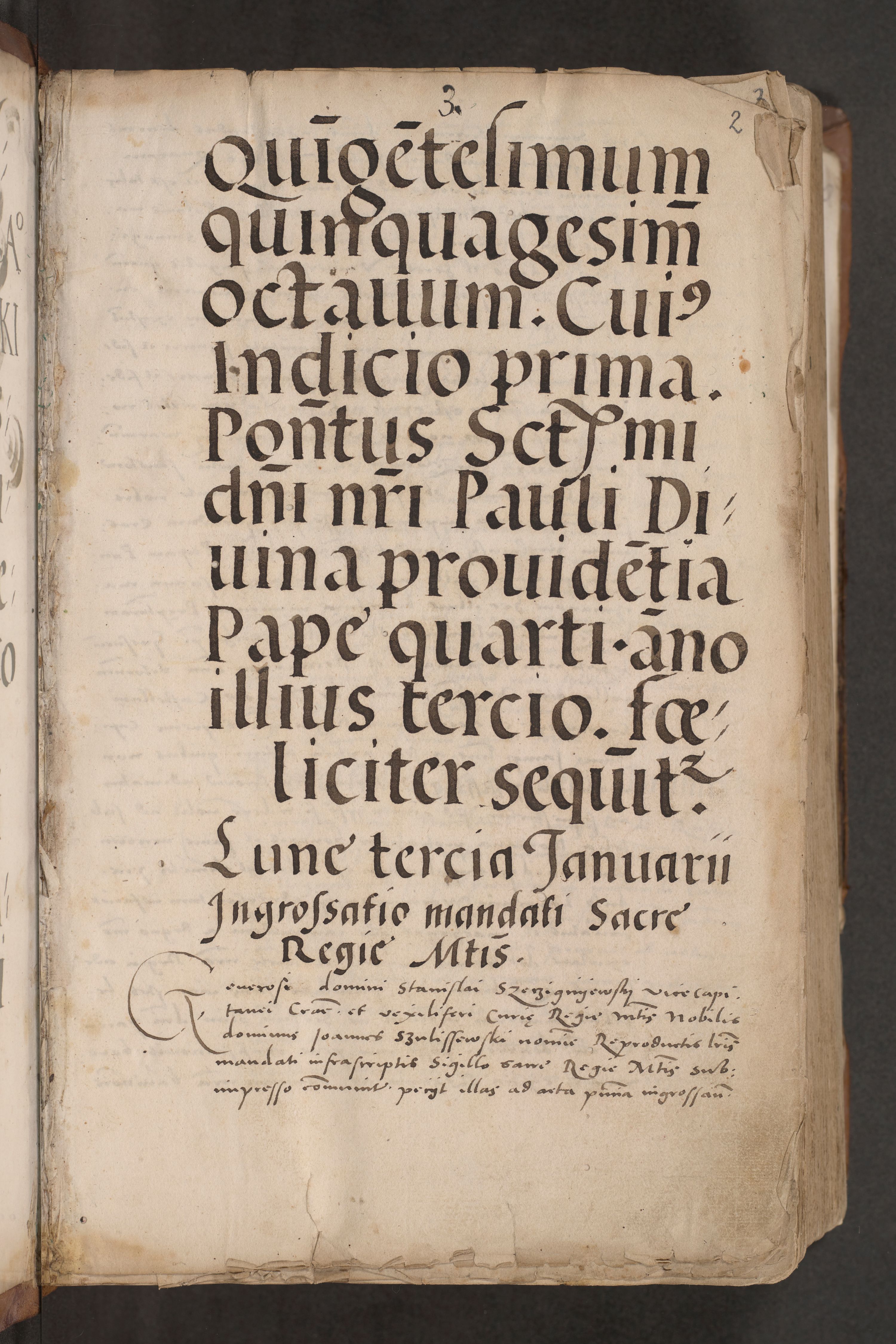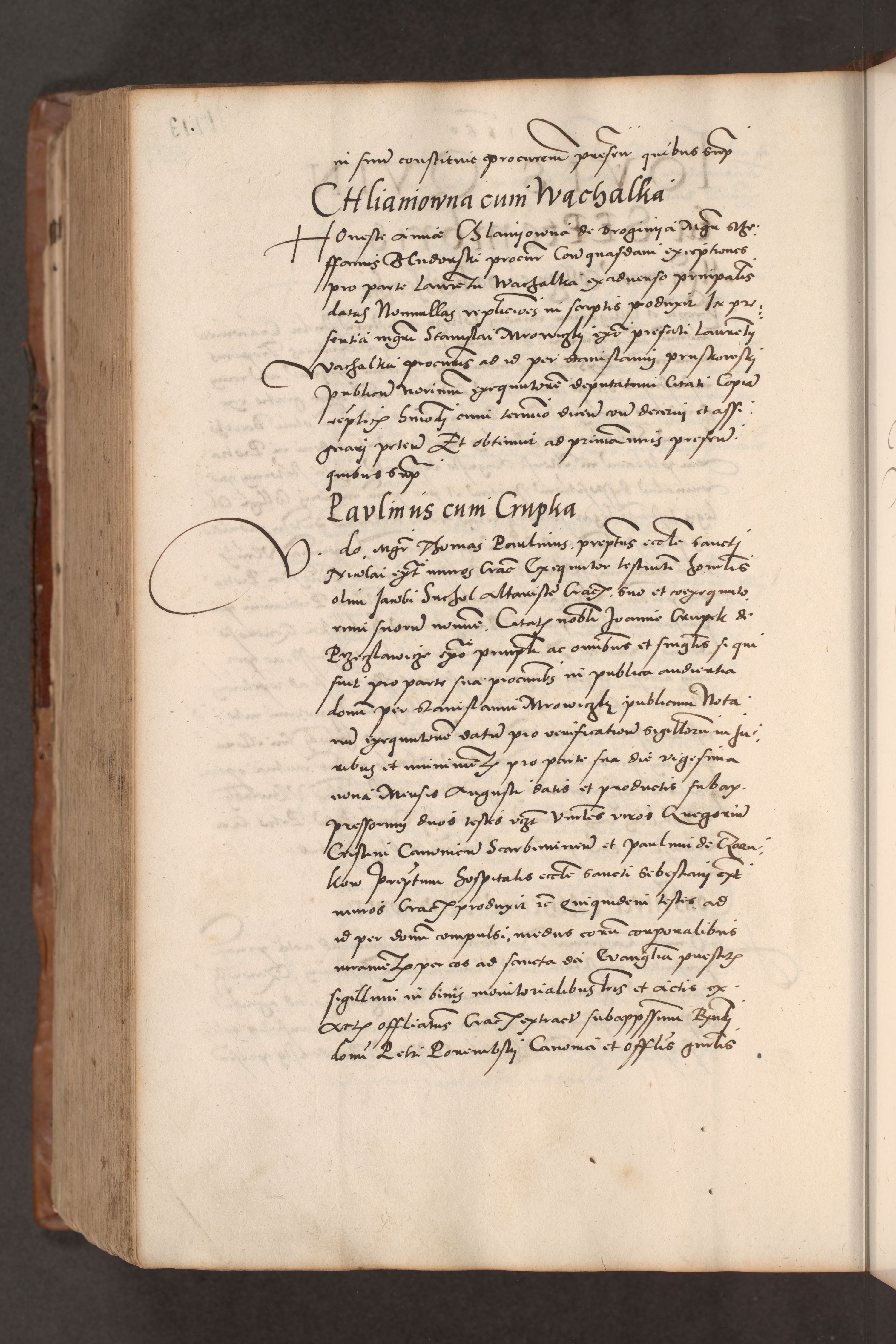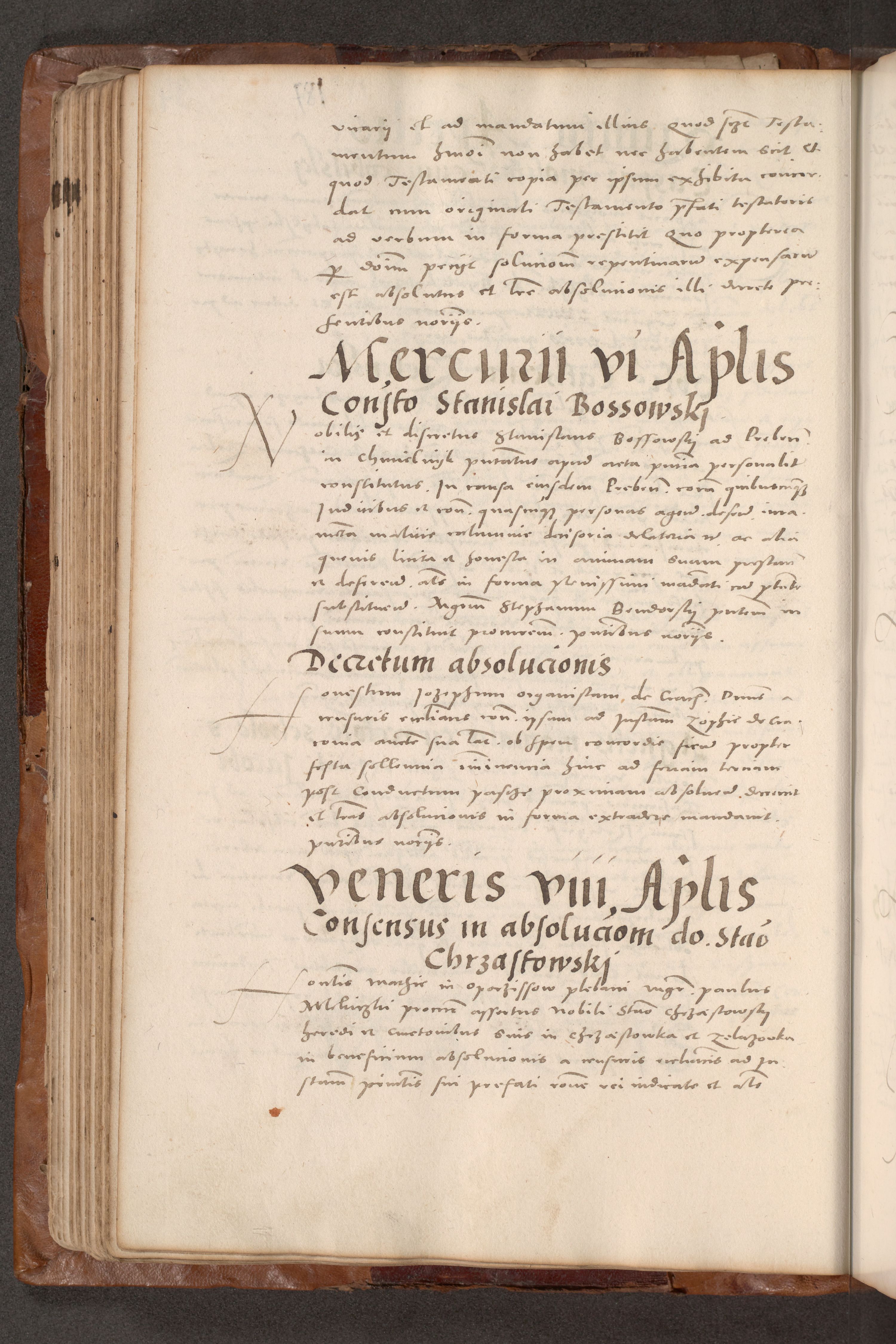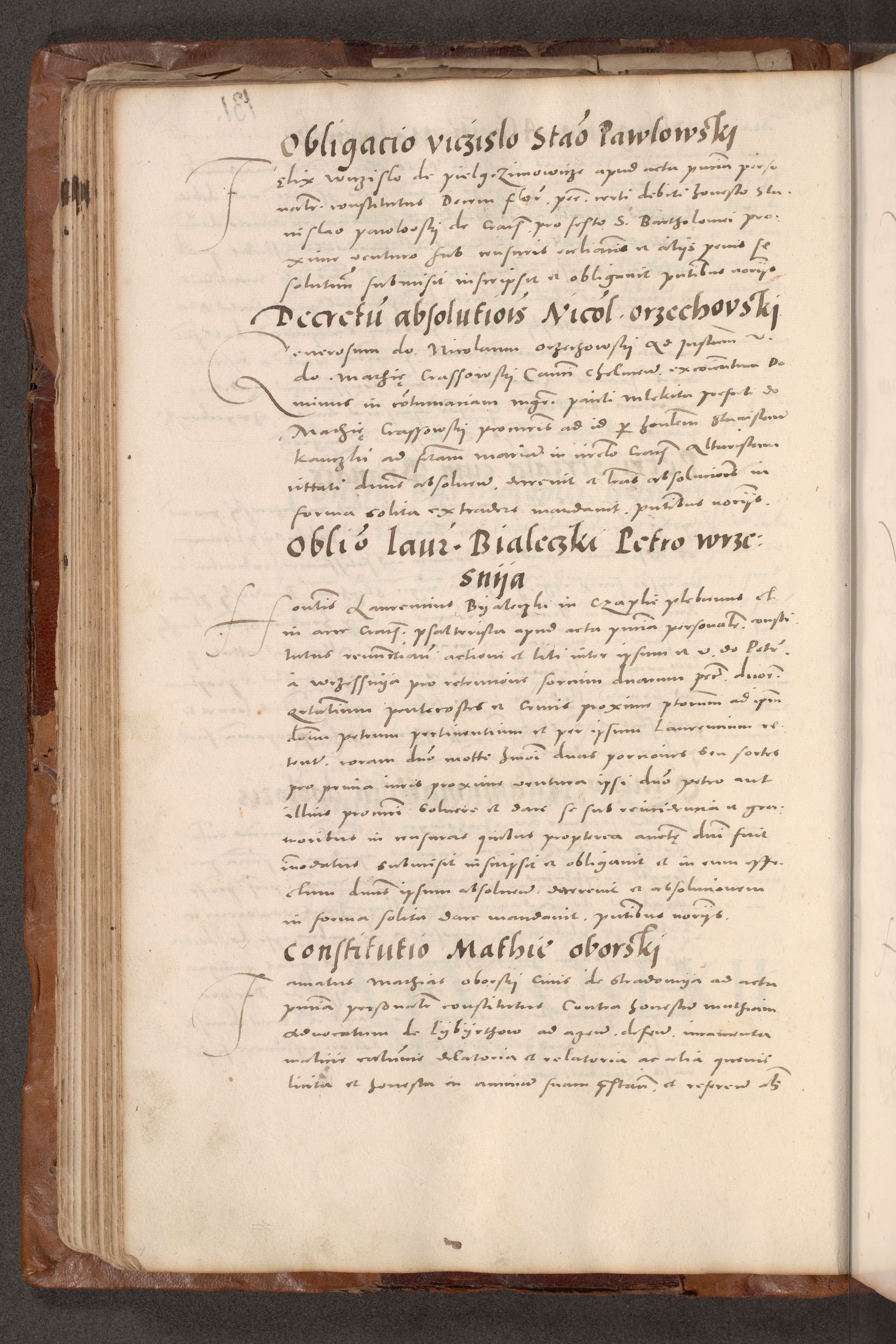 Acta actorum causarum, sententiarum tam diffinivarum quam interloquutoriarum, decretorum, obligationum, quietationum et constitutionum procuratorum coram reverendo domino Stanislao Szlomowski praeposito Calissieensi, archidiacono Sandecensi, canonico vicarioque in spiritualibus generali Cracoviensi ad annum Domini millesimum quingentesimum quinquagesimum octavum, cuius indicio prima, pontificatus sanctissimi domini nostri Pauli divina providencia pape quarti, anno illius tercio, feliciter sequuntur.