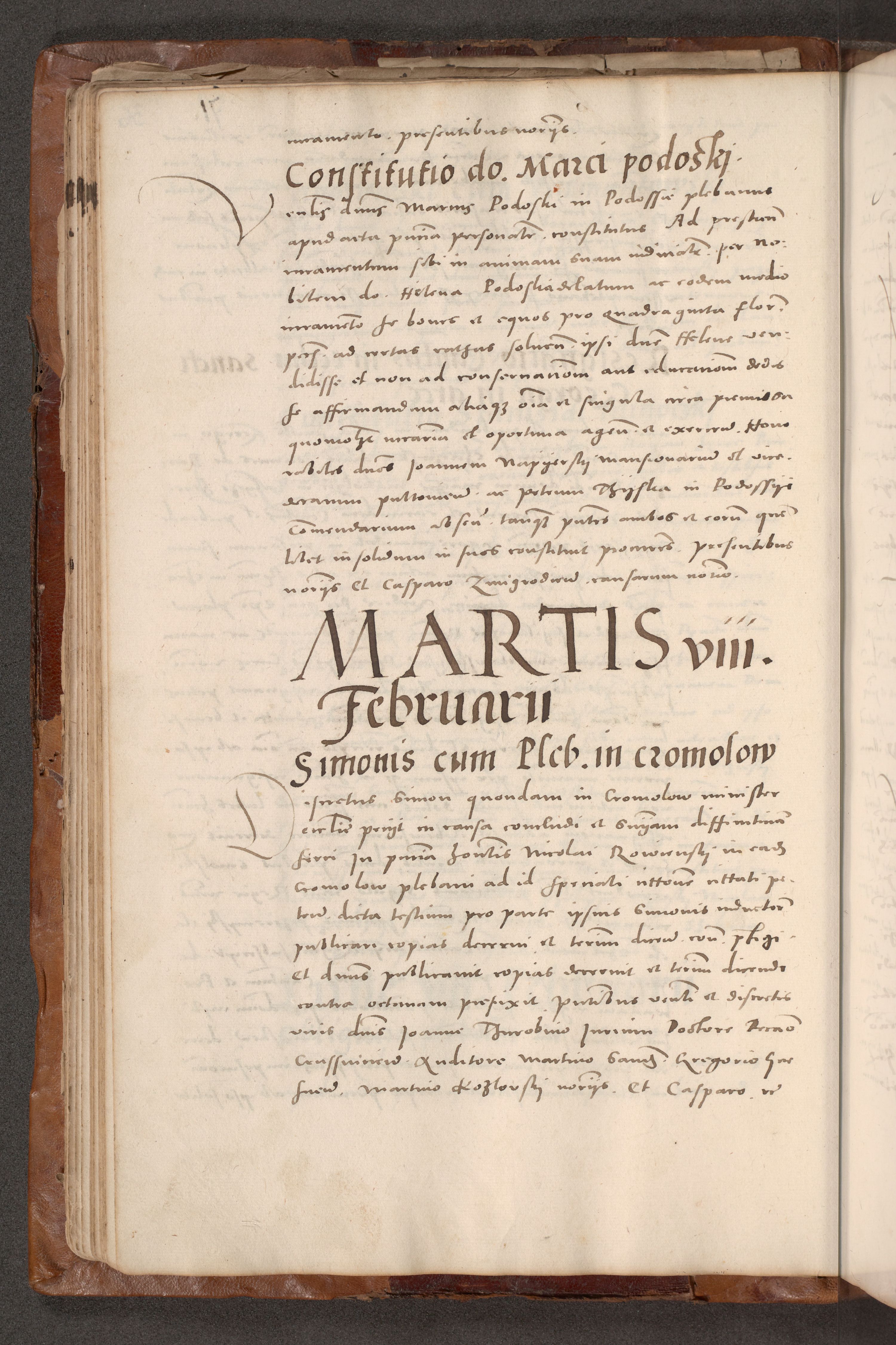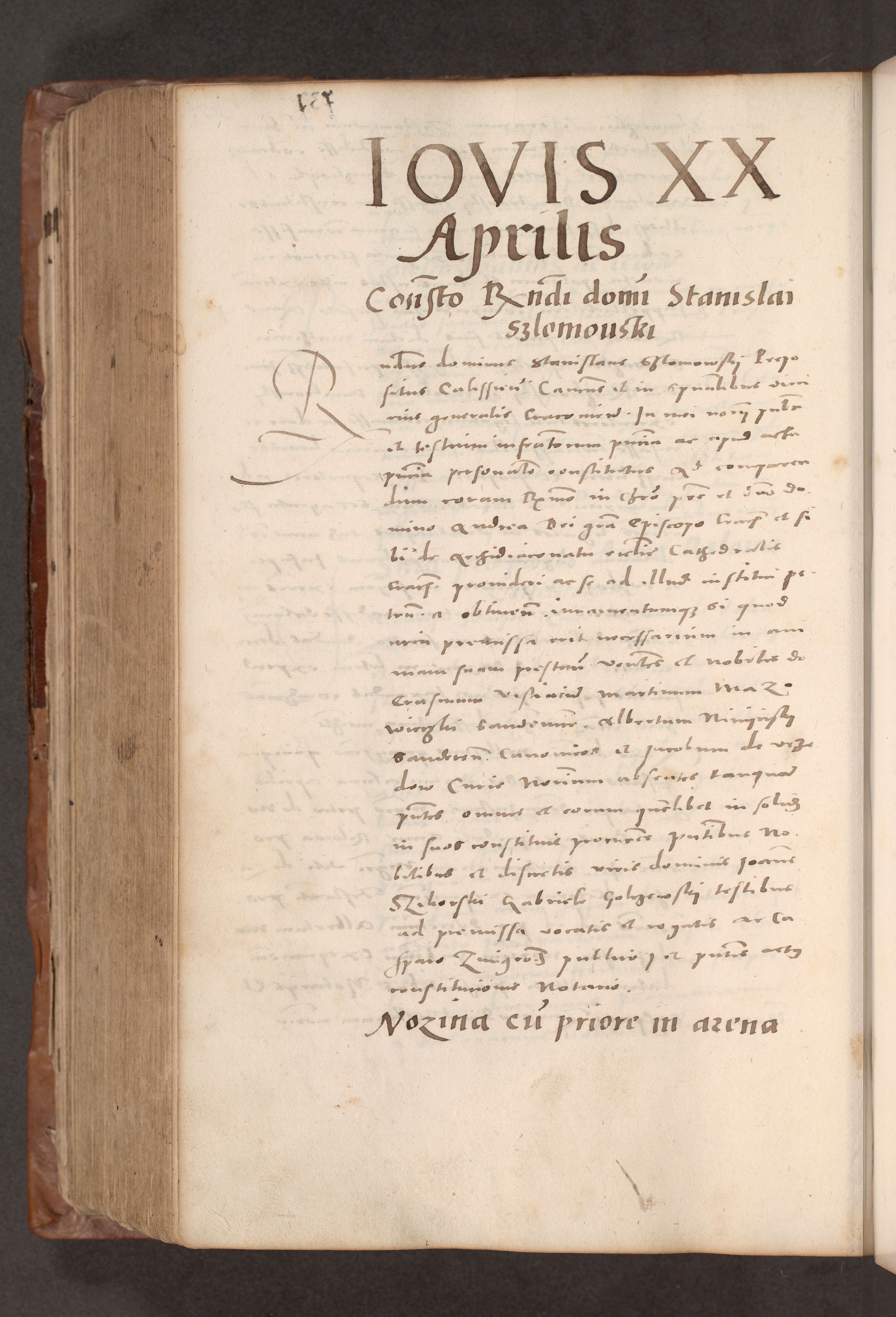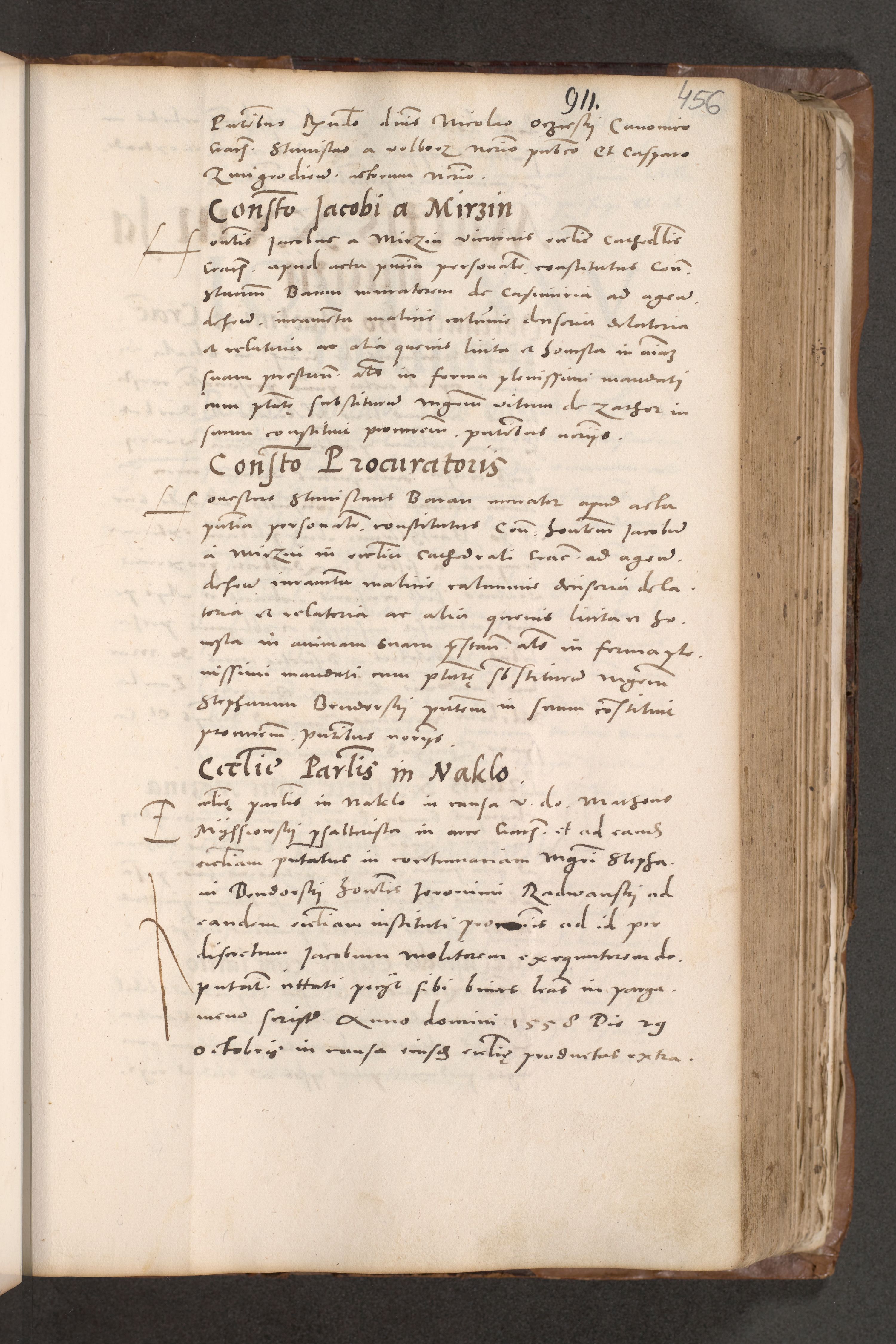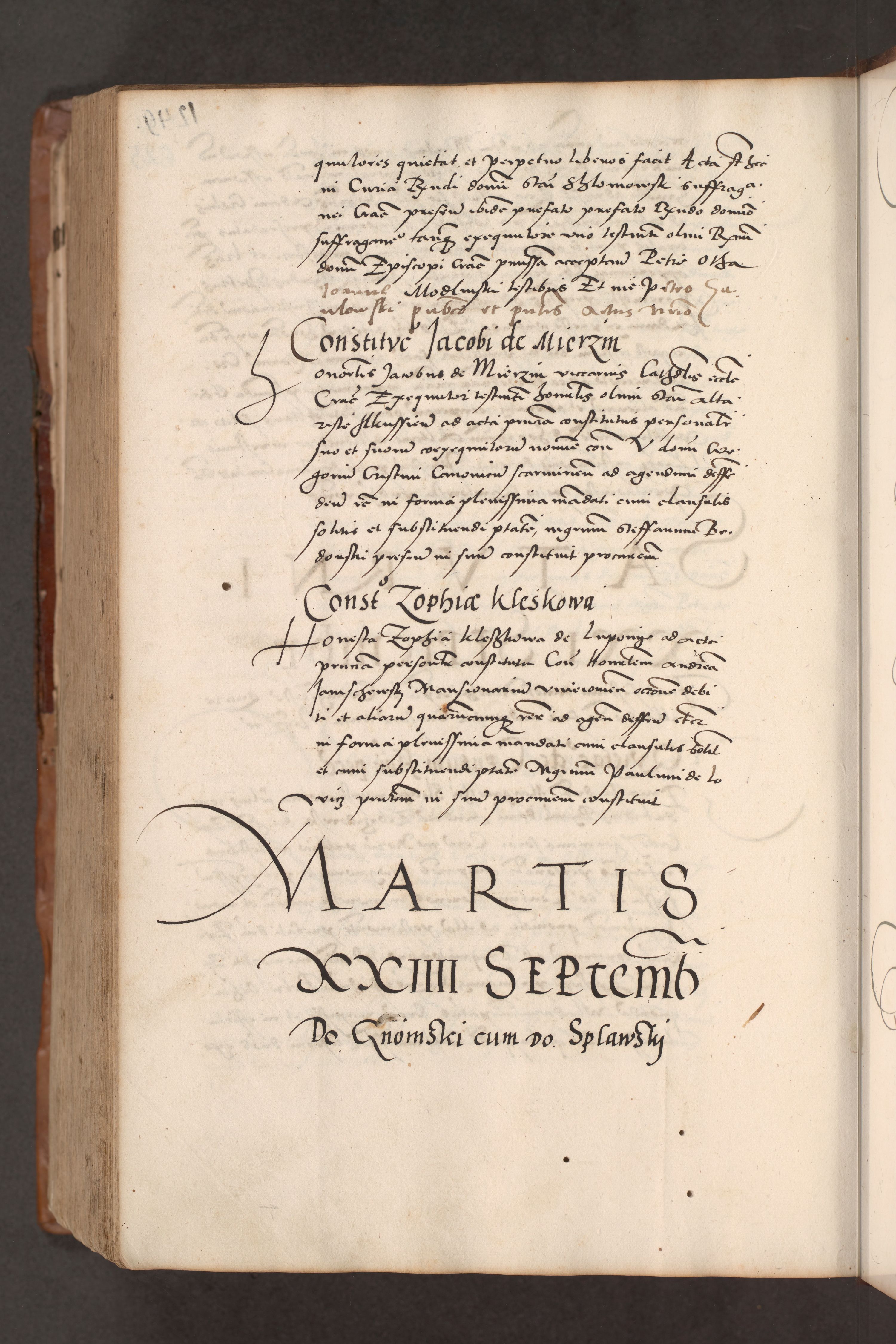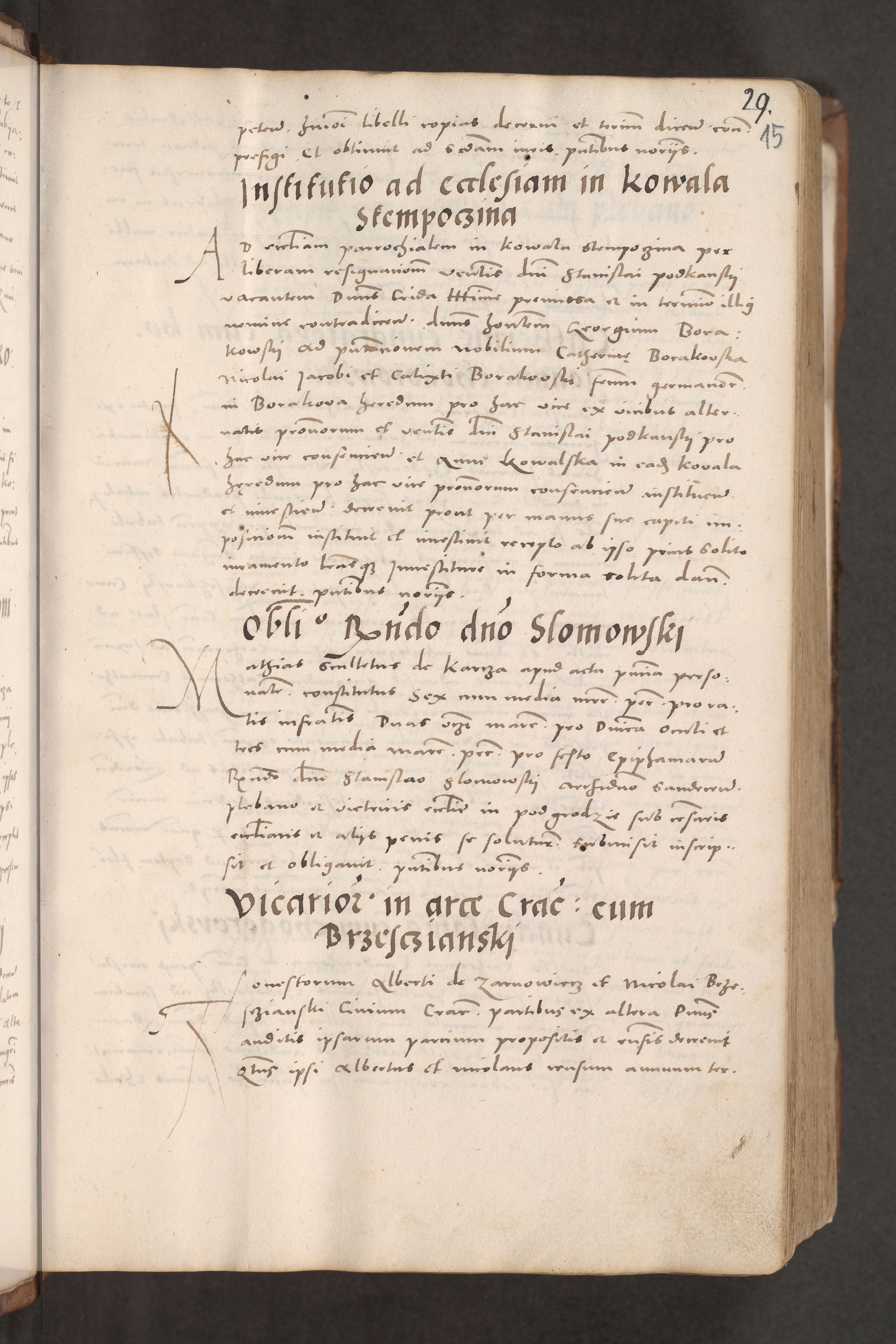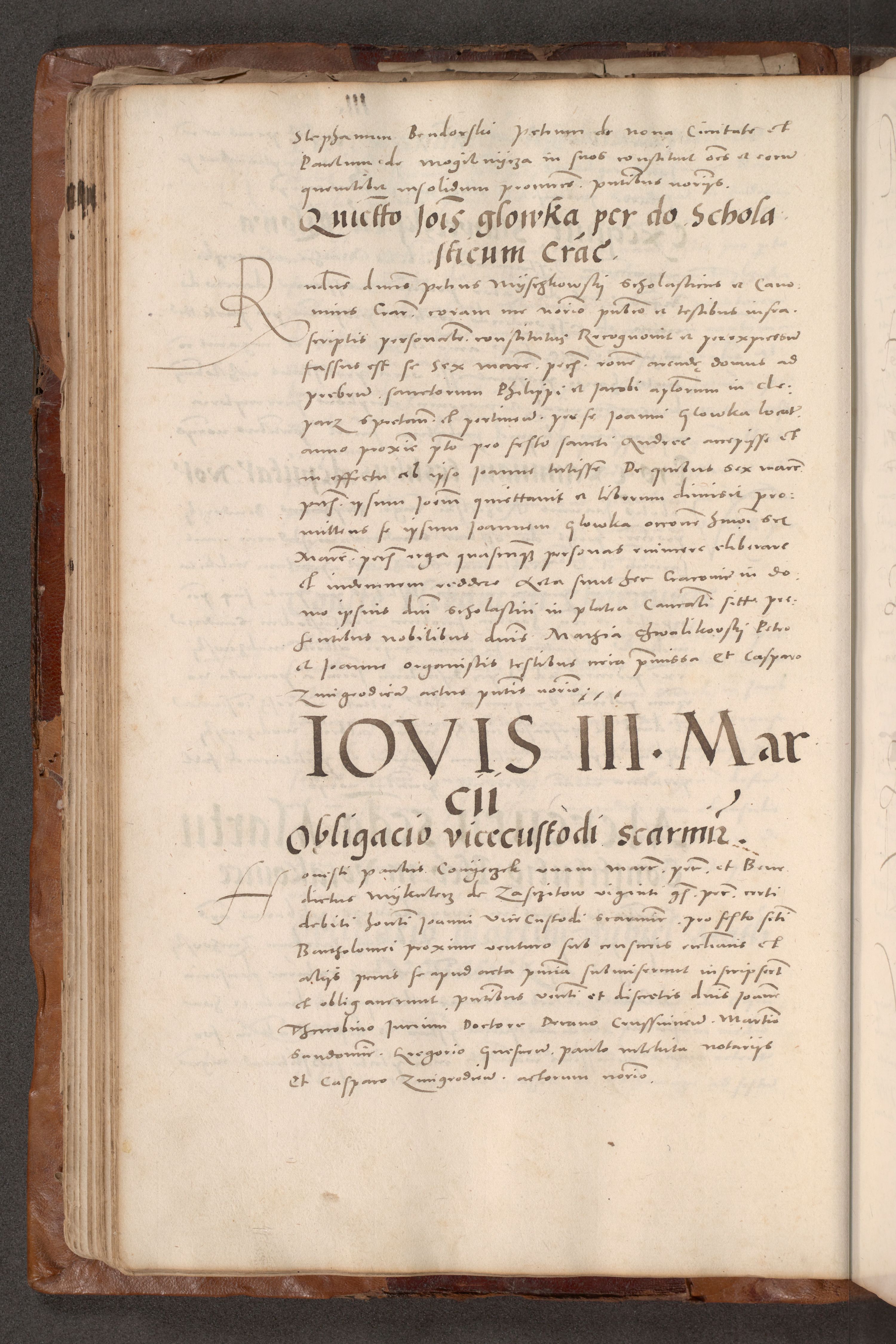 Acta actorum causarum, sententiarum tam diffinivarum quam interloquutoriarum, decretorum, obligationum, quietationum et constitutionum procuratorum coram reverendo domino Stanislao Szlomowski praeposito Calissieensi, archidiacono Sandecensi, canonico vicarioque in spiritualibus generali Cracoviensi ad annum Domini millesimum quingentesimum quinquagesimum octavum, cuius indicio prima, pontificatus sanctissimi domini nostri Pauli divina providencia pape quarti, anno illius tercio, feliciter sequuntur.