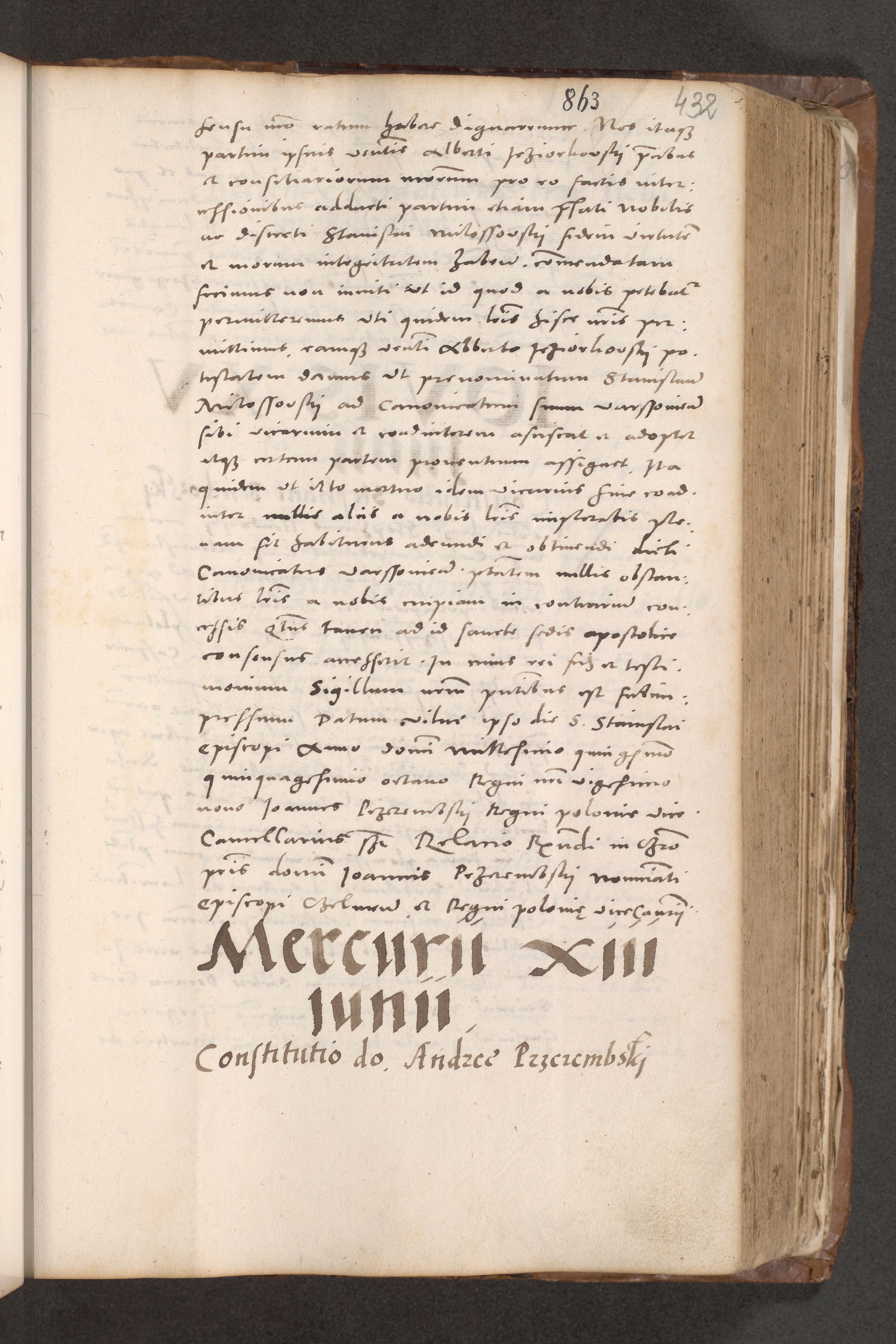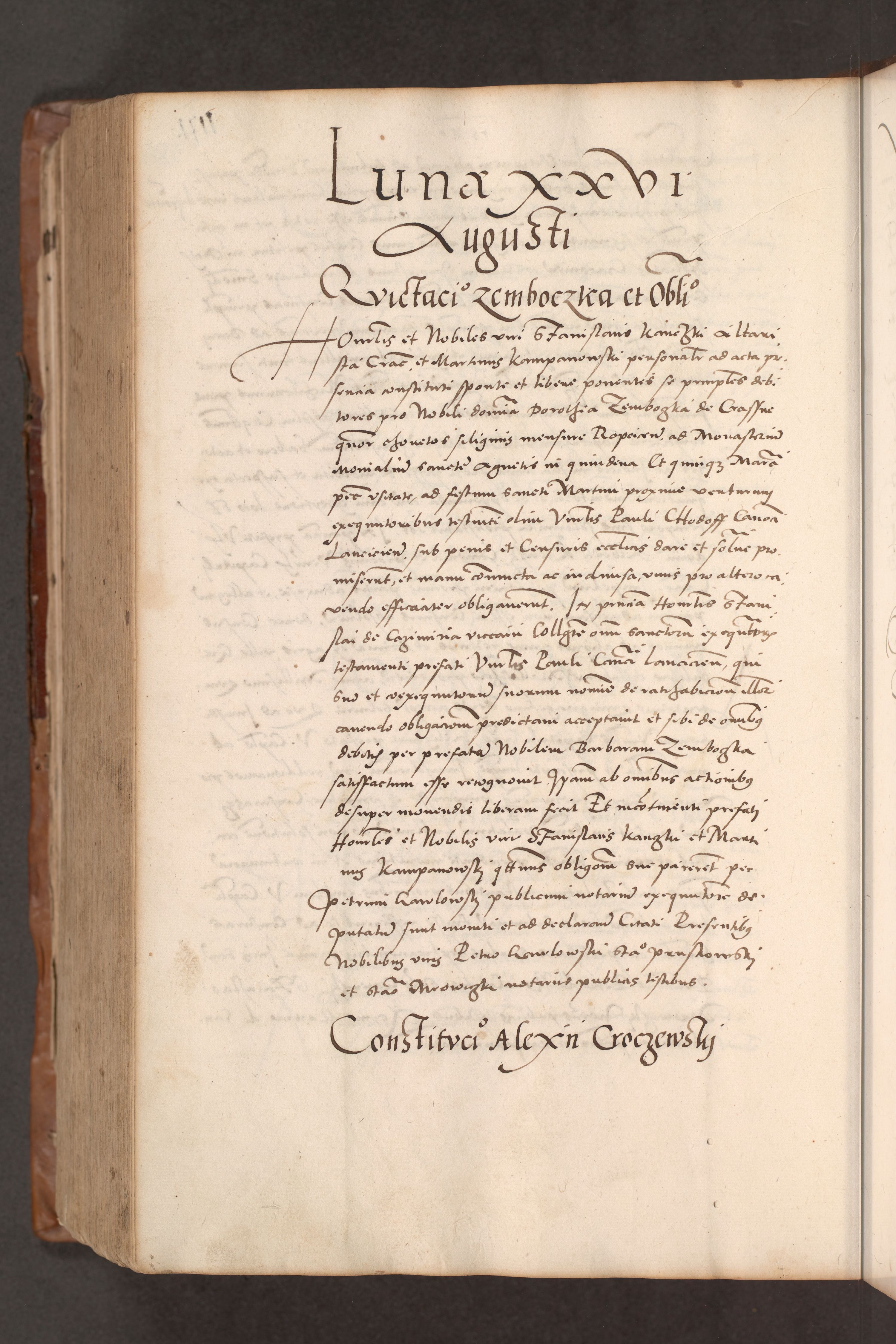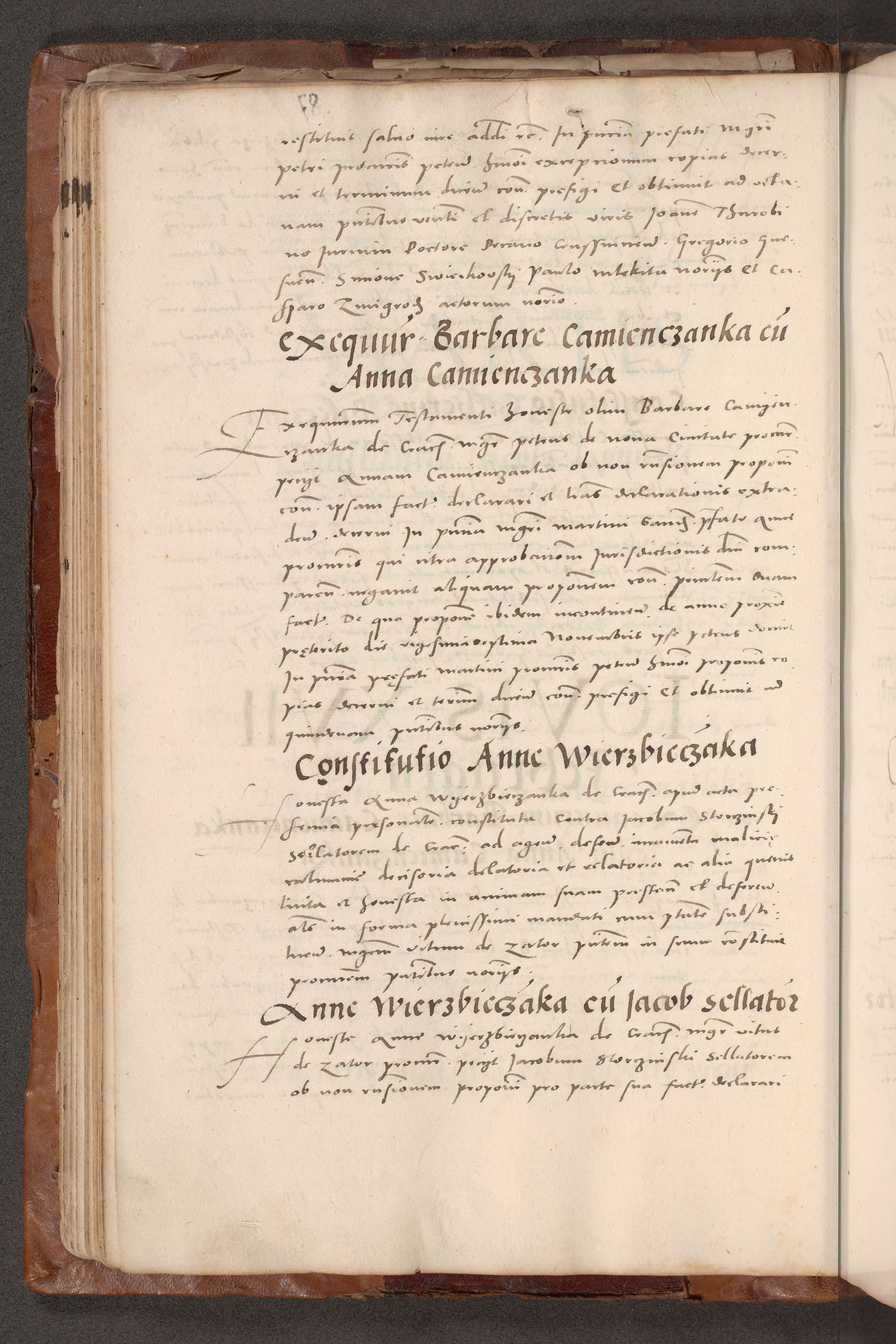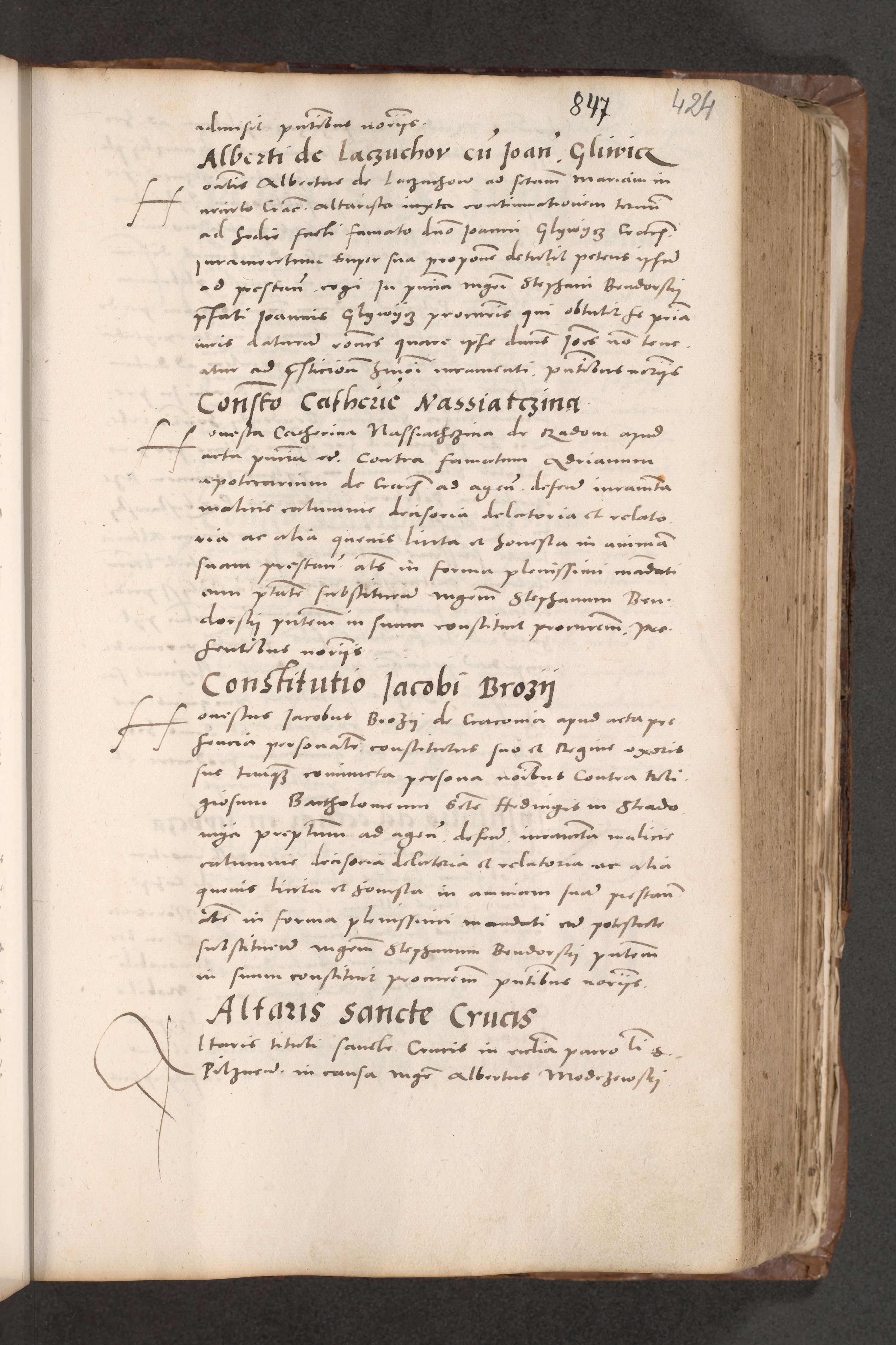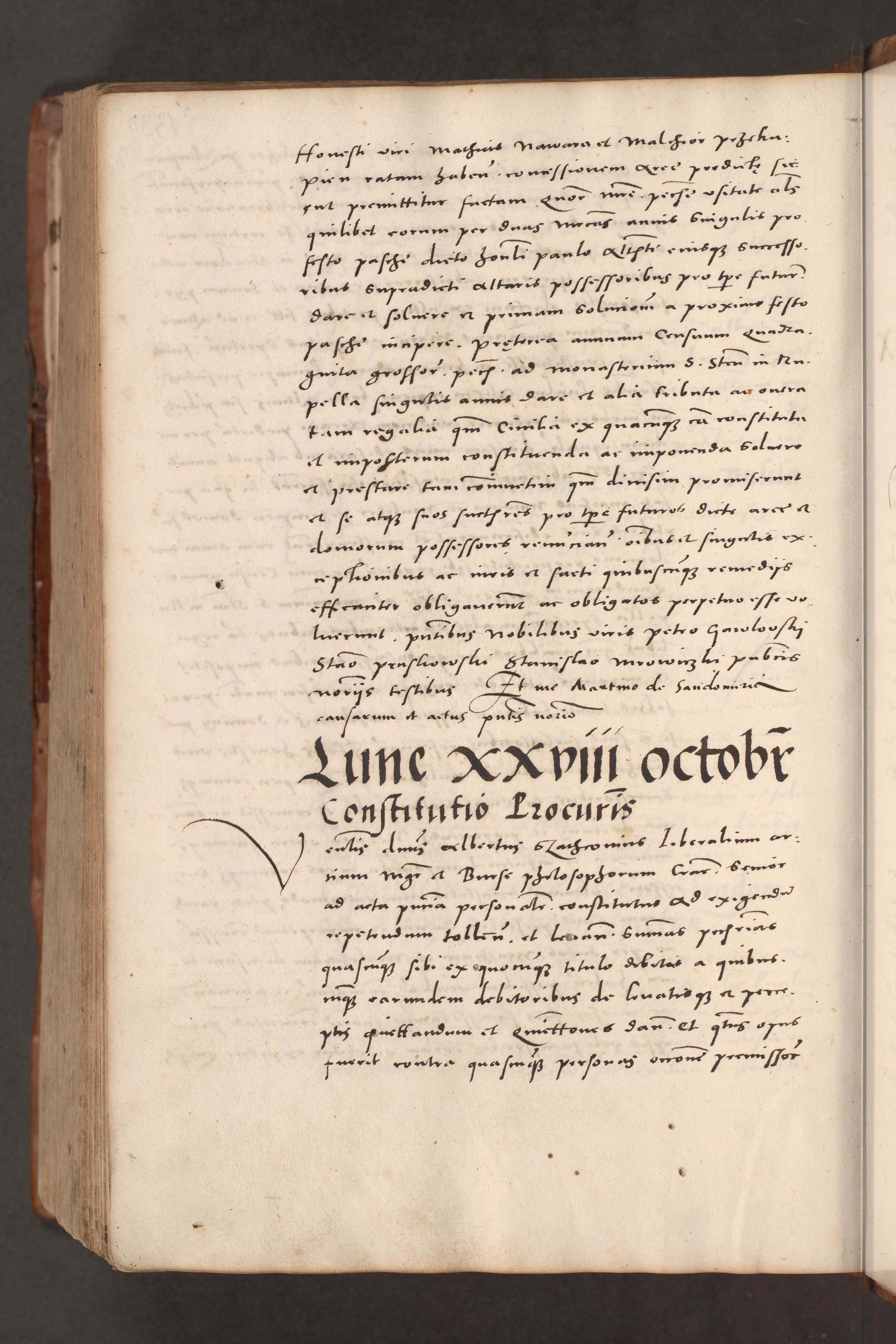 Acta actorum causarum, sententiarum tam diffinivarum quam interloquutoriarum, decretorum, obligationum, quietationum et constitutionum procuratorum coram reverendo domino Stanislao Szlomowski praeposito Calissieensi, archidiacono Sandecensi, canonico vicarioque in spiritualibus generali Cracoviensi ad annum Domini millesimum quingentesimum quinquagesimum octavum, cuius indicio prima, pontificatus sanctissimi domini nostri Pauli divina providencia pape quarti, anno illius tercio, feliciter sequuntur.