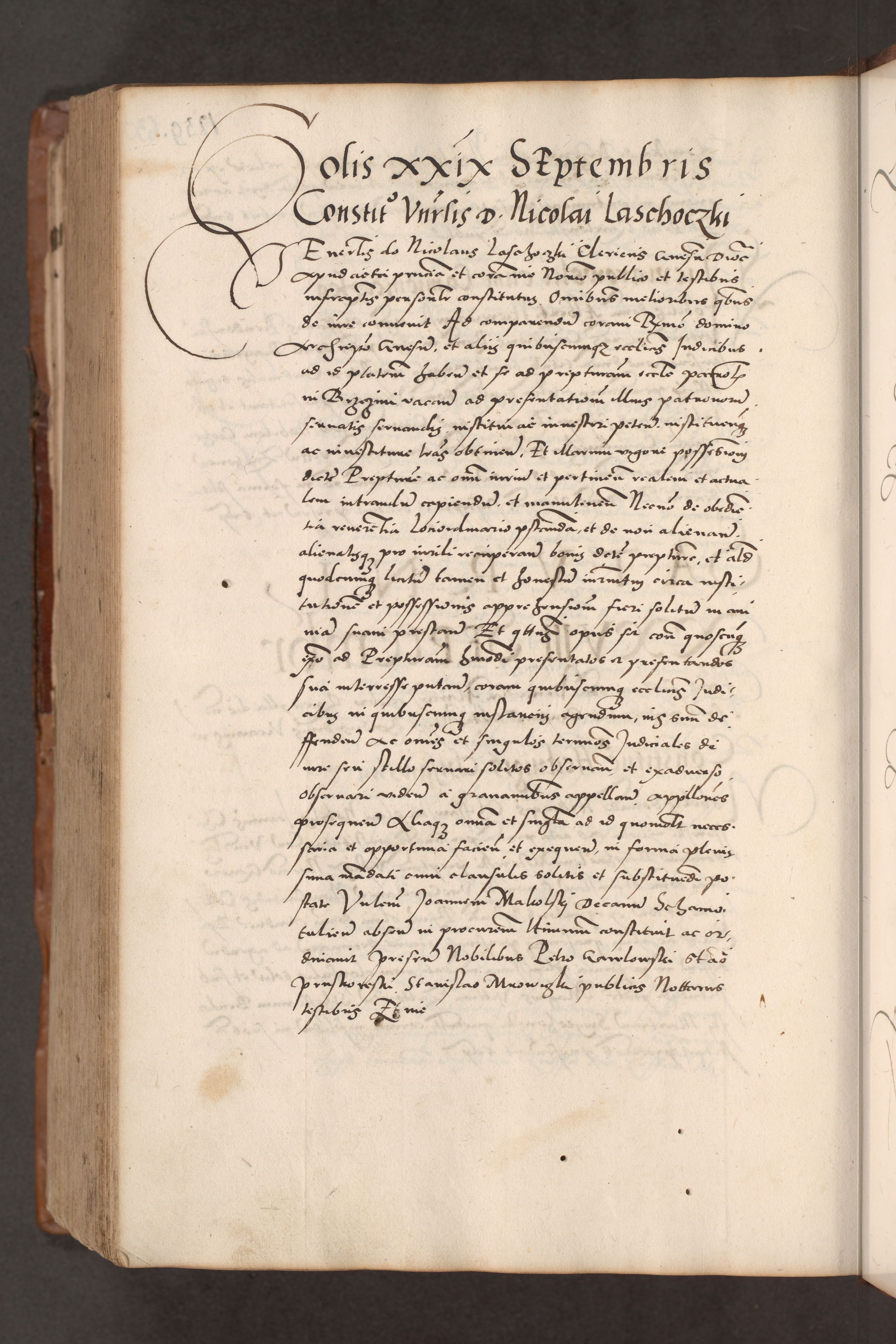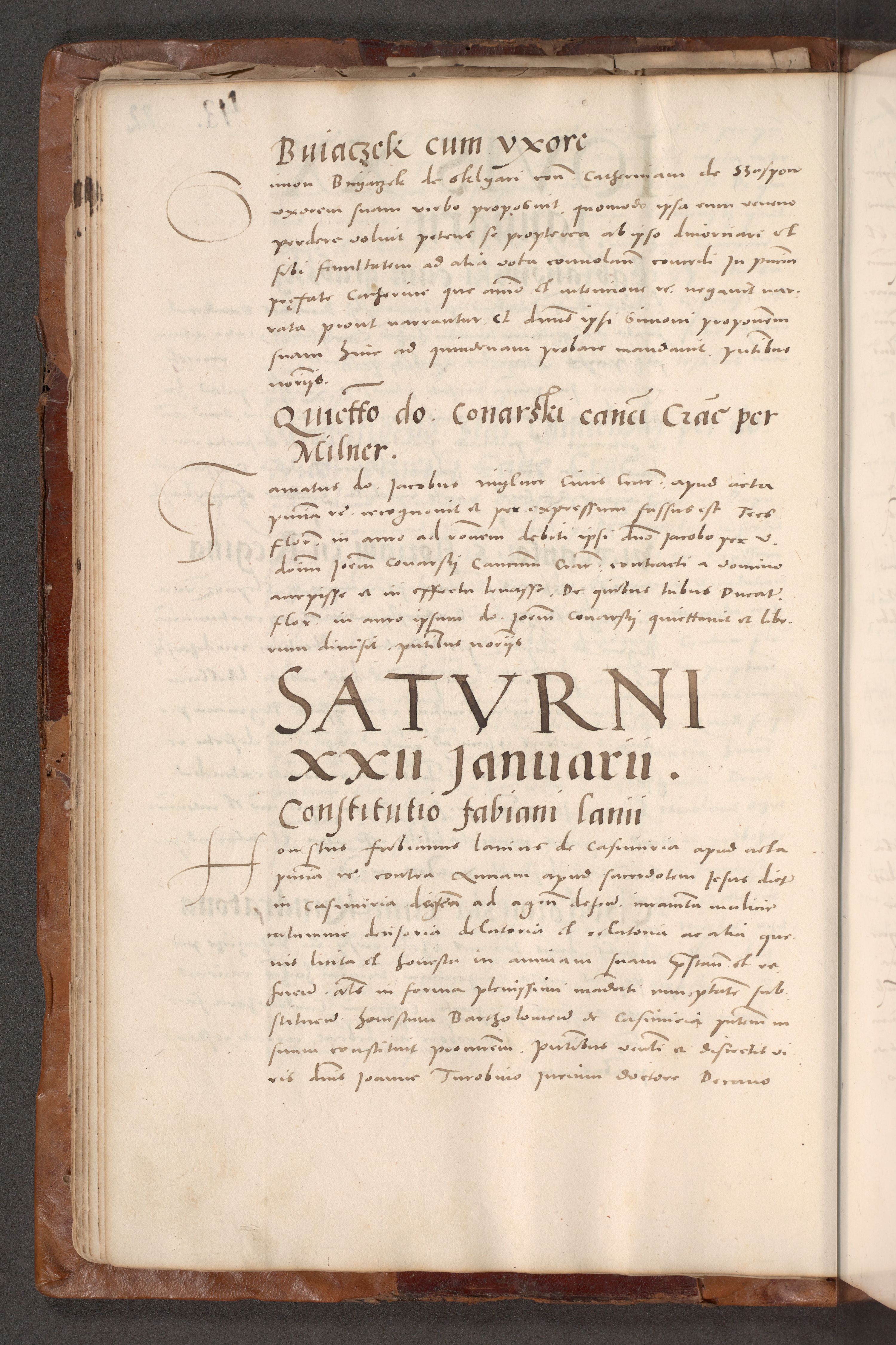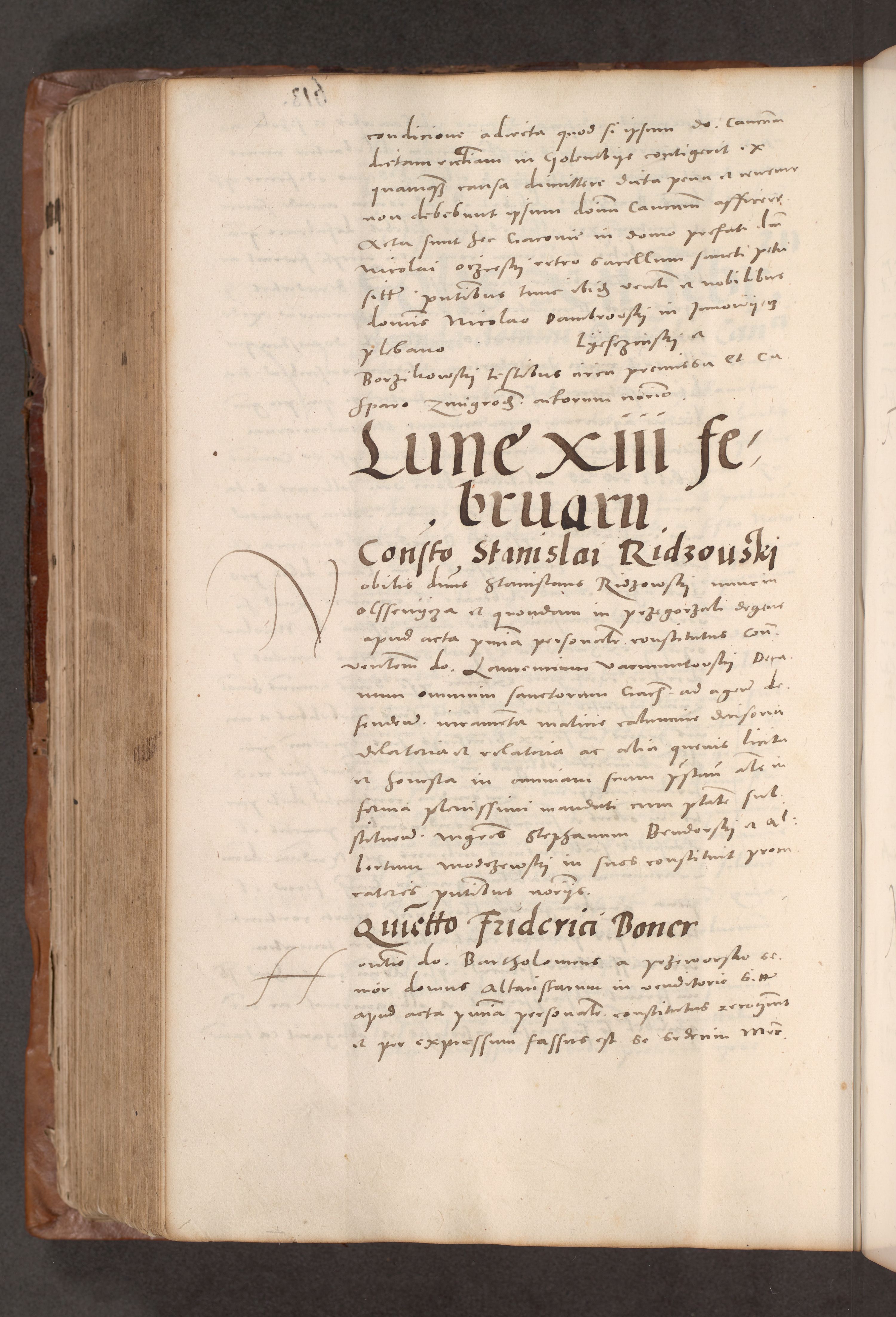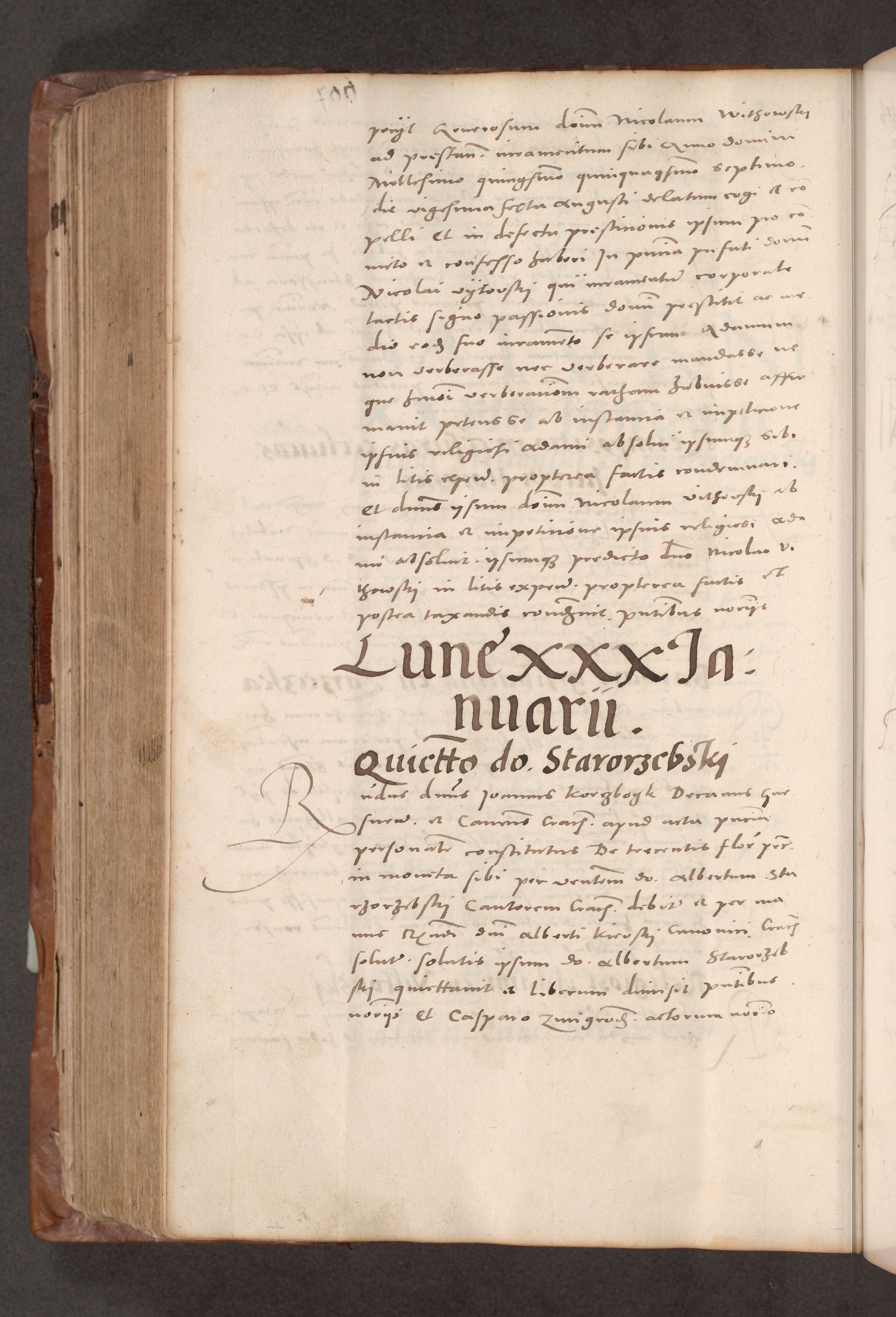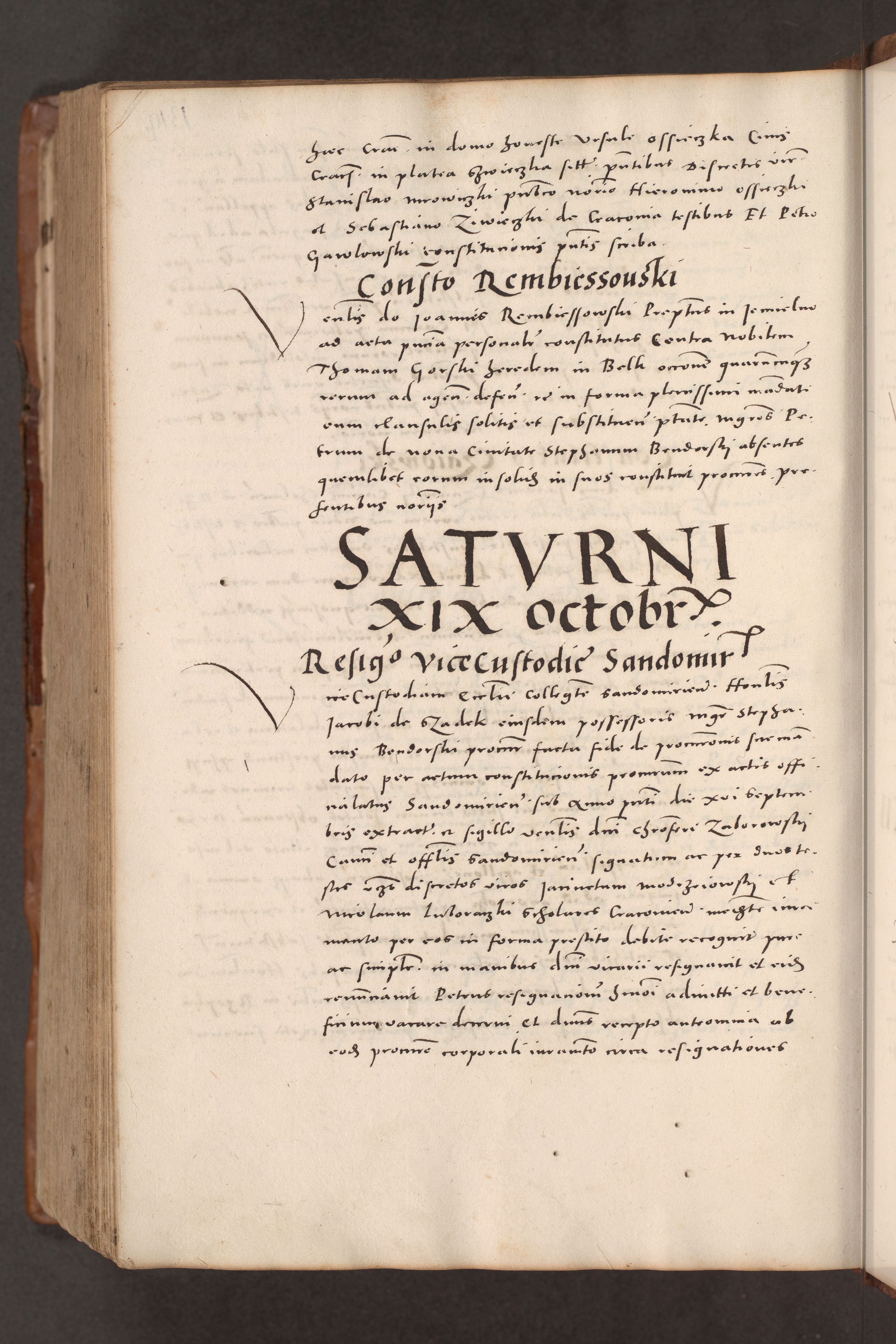 Acta actorum causarum, sententiarum tam diffinivarum quam interloquutoriarum, decretorum, obligationum, quietationum et constitutionum procuratorum coram reverendo domino Stanislao Szlomowski praeposito Calissieensi, archidiacono Sandecensi, canonico vicarioque in spiritualibus generali Cracoviensi ad annum Domini millesimum quingentesimum quinquagesimum octavum, cuius indicio prima, pontificatus sanctissimi domini nostri Pauli divina providencia pape quarti, anno illius tercio, feliciter sequuntur.