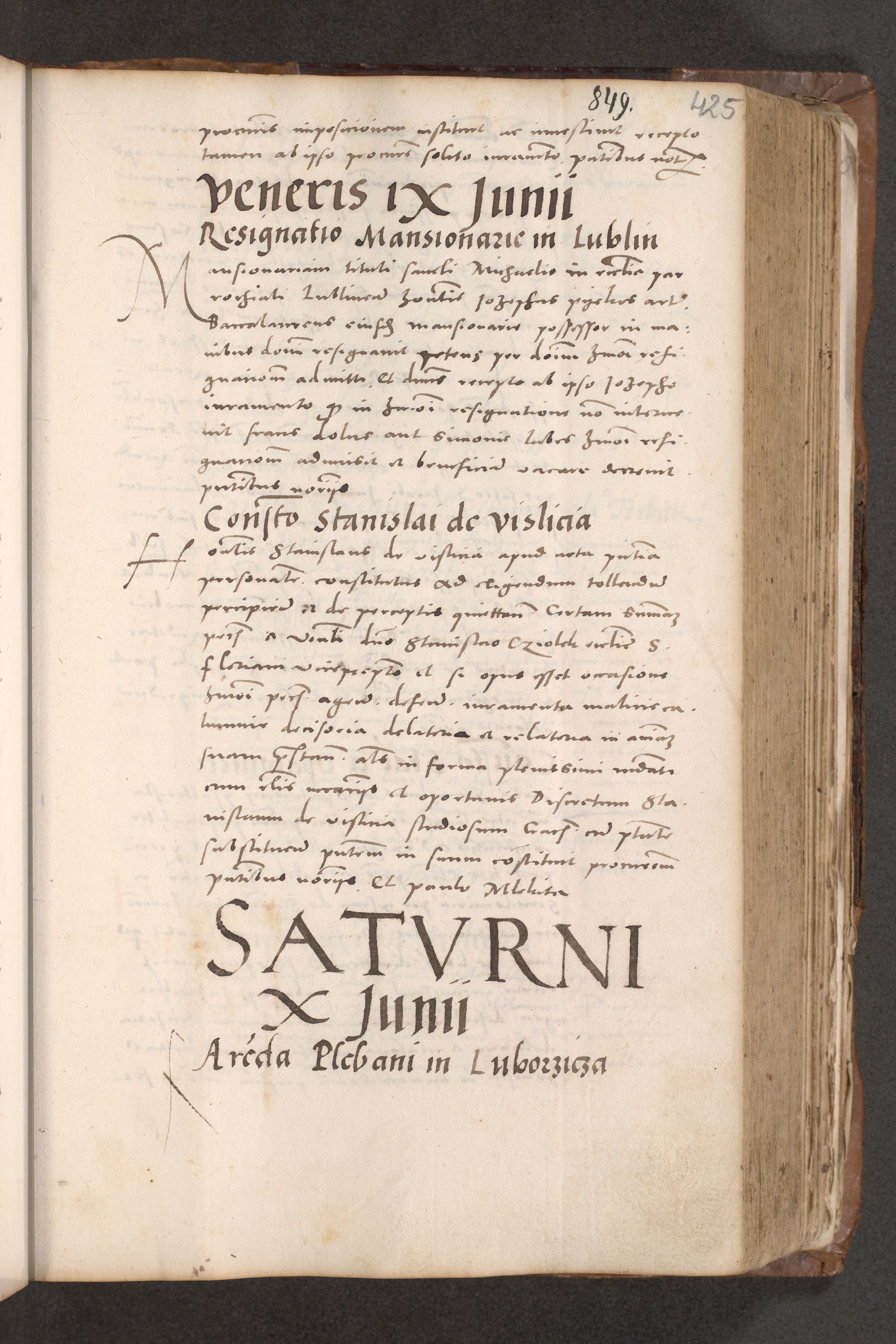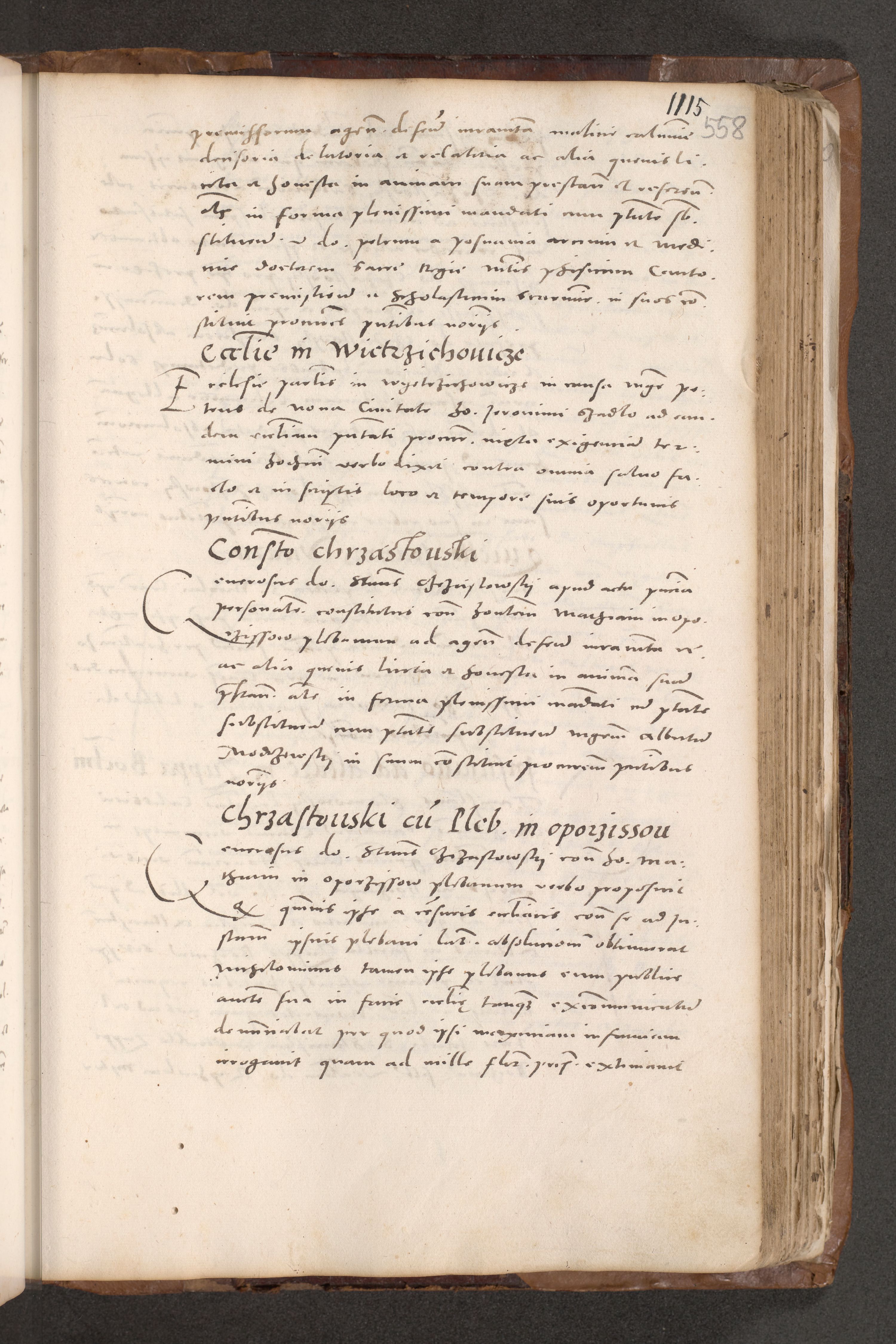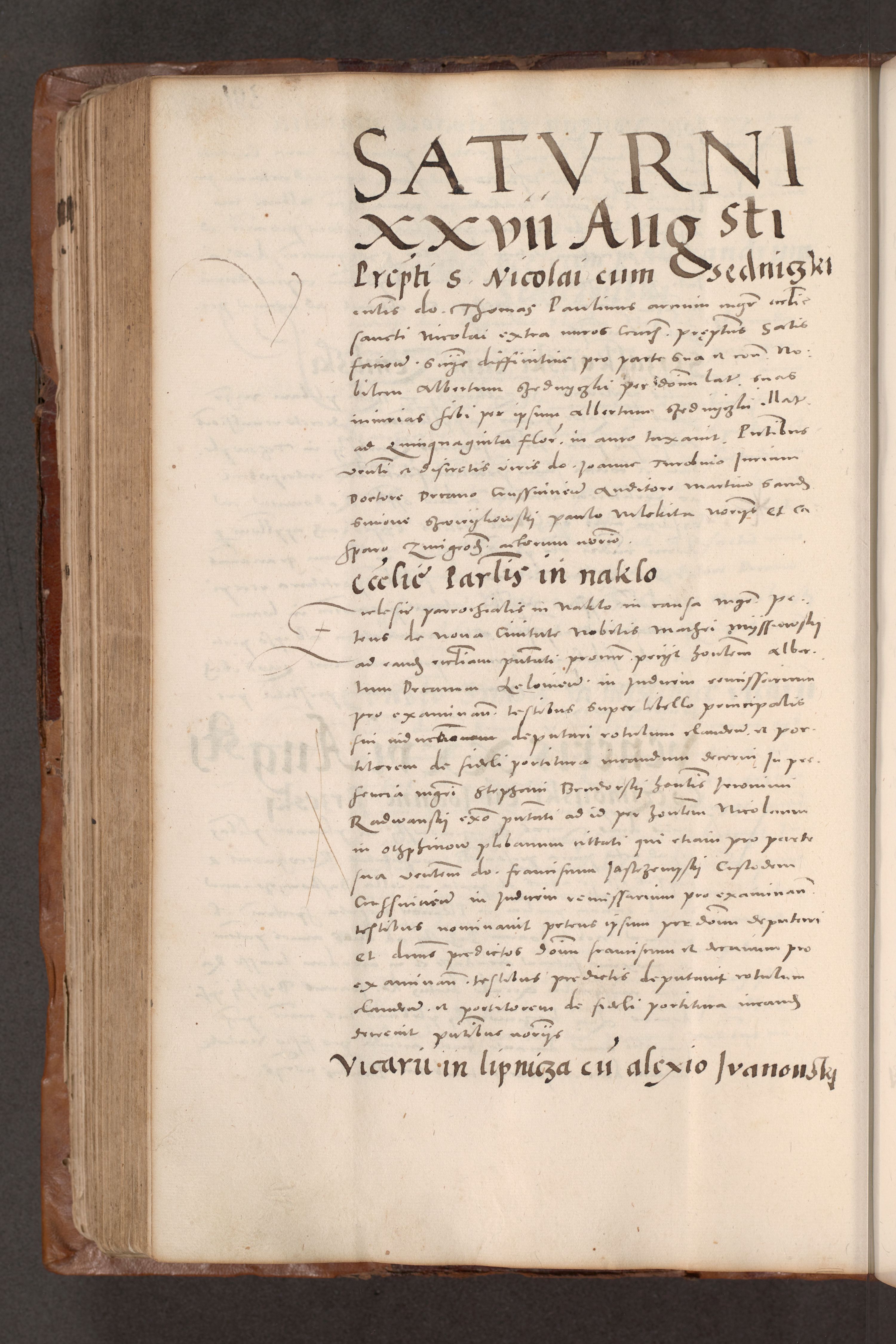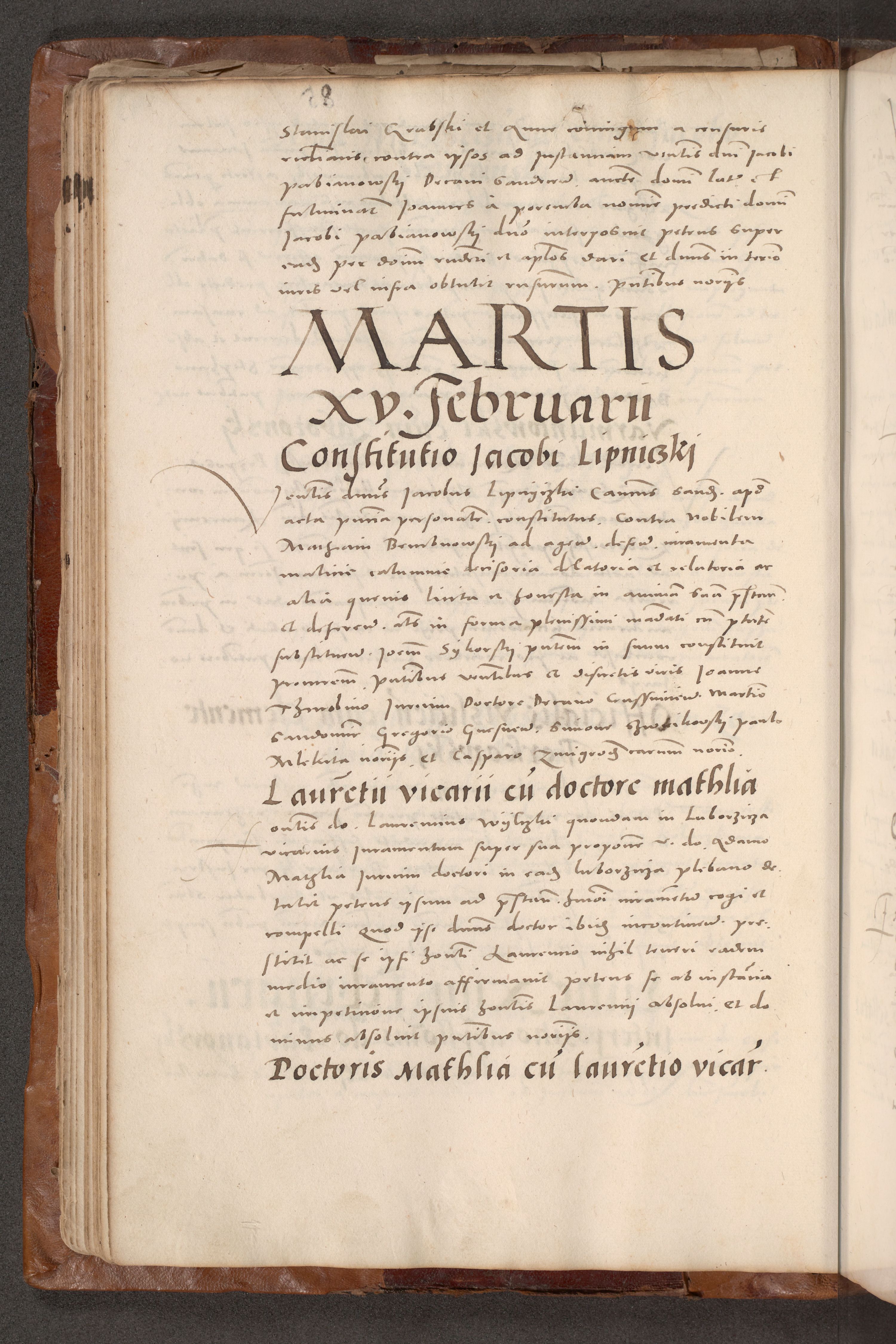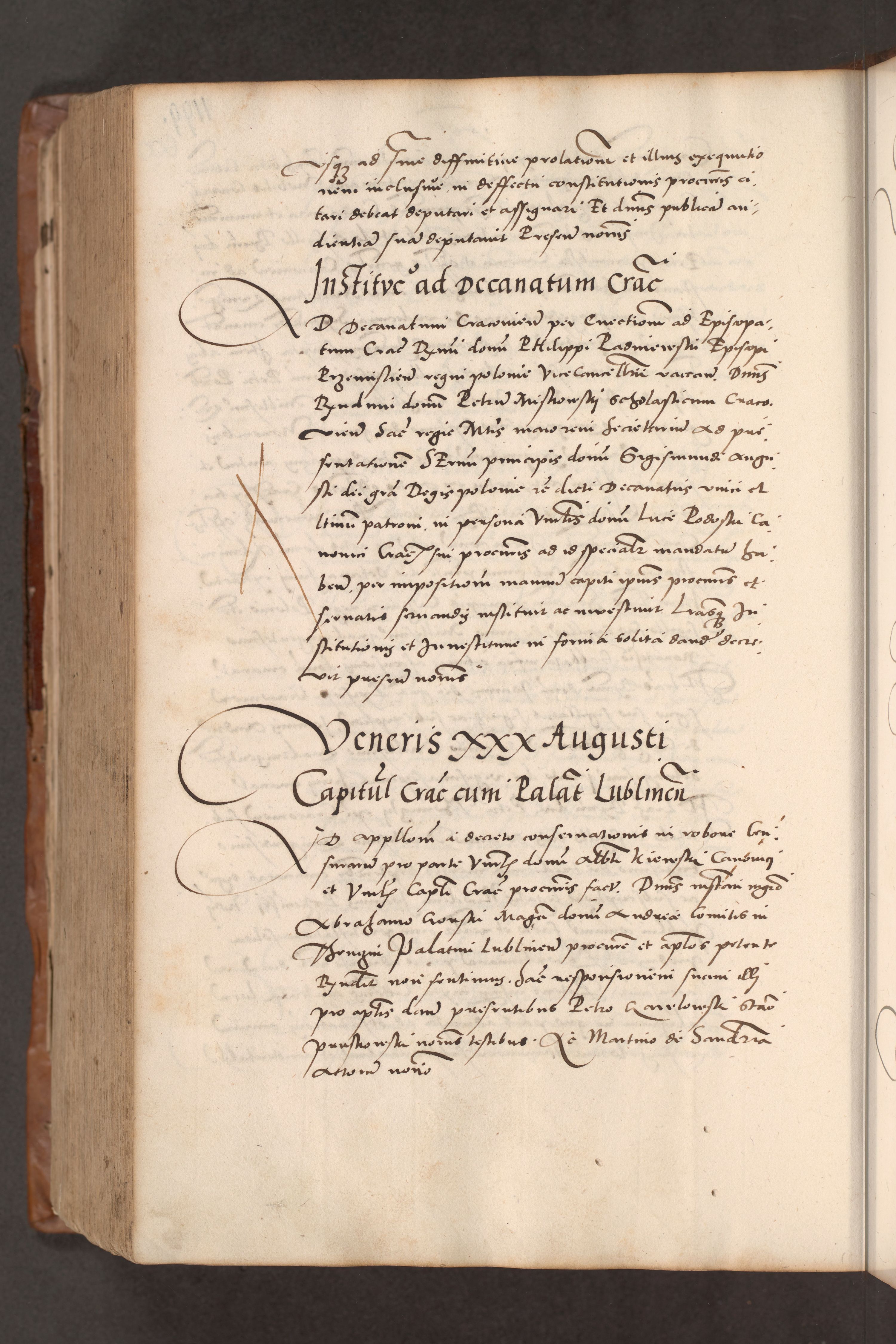 Acta actorum causarum, sententiarum tam diffinivarum quam interloquutoriarum, decretorum, obligationum, quietationum et constitutionum procuratorum coram reverendo domino Stanislao Szlomowski praeposito Calissieensi, archidiacono Sandecensi, canonico vicarioque in spiritualibus generali Cracoviensi ad annum Domini millesimum quingentesimum quinquagesimum octavum, cuius indicio prima, pontificatus sanctissimi domini nostri Pauli divina providencia pape quarti, anno illius tercio, feliciter sequuntur.