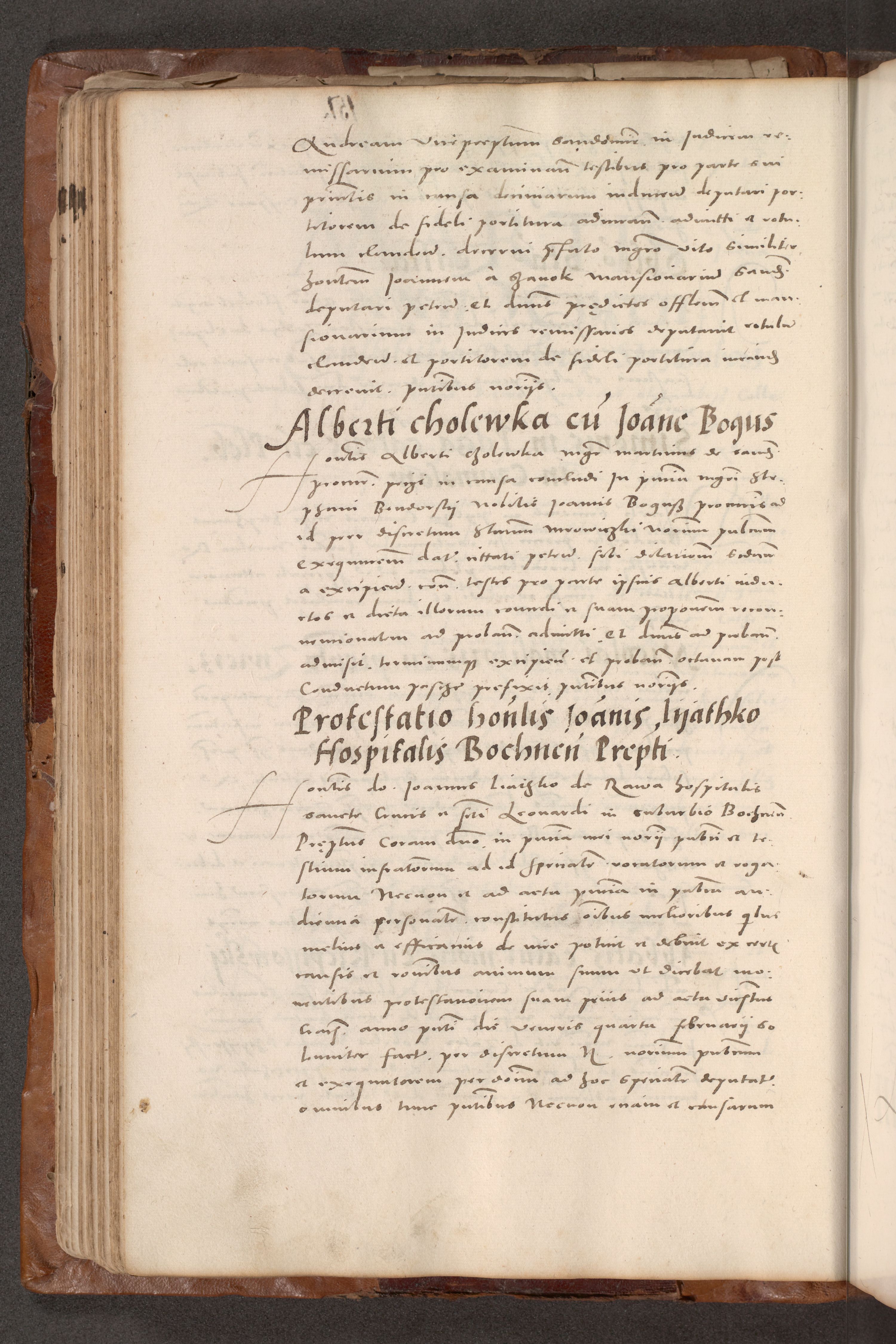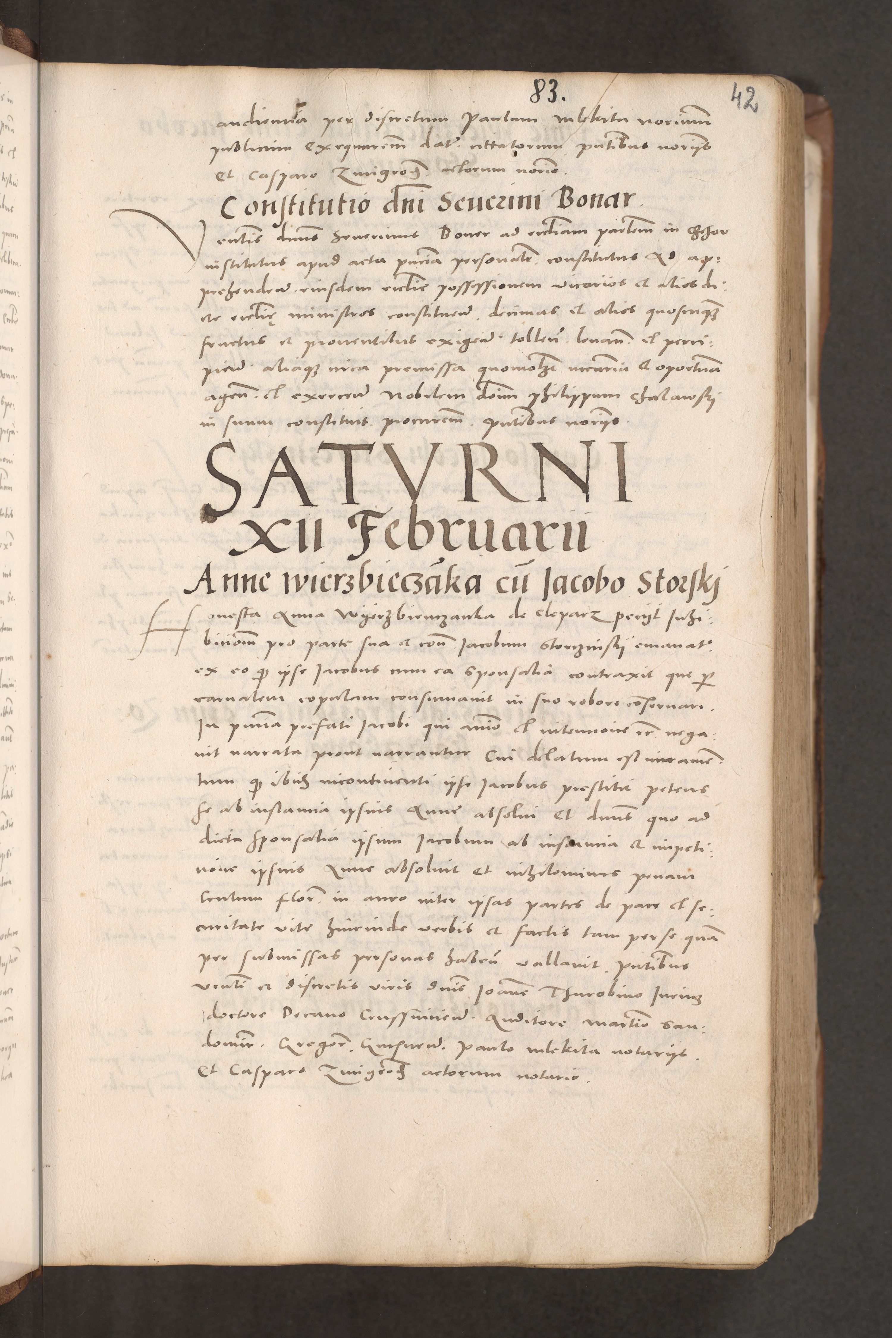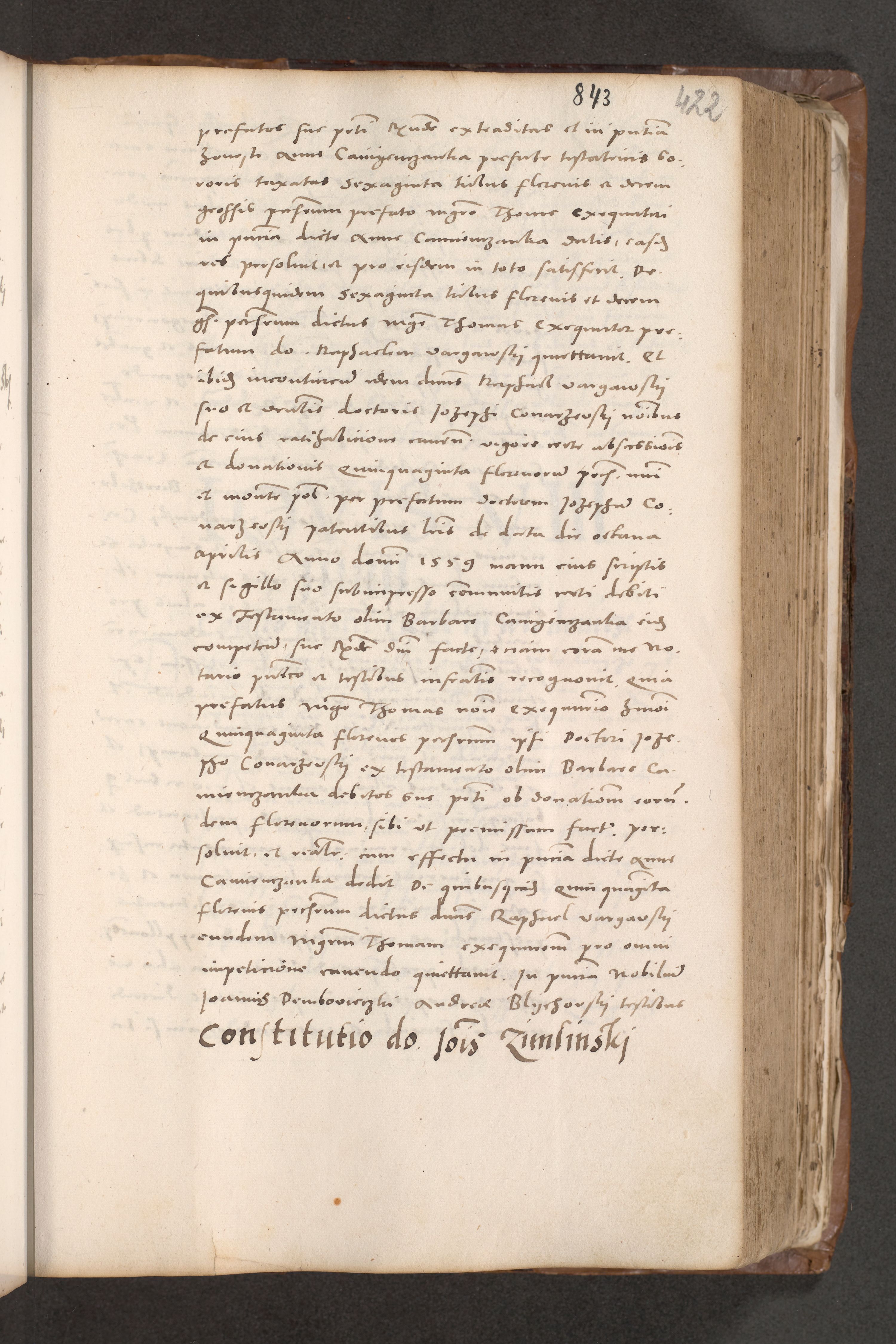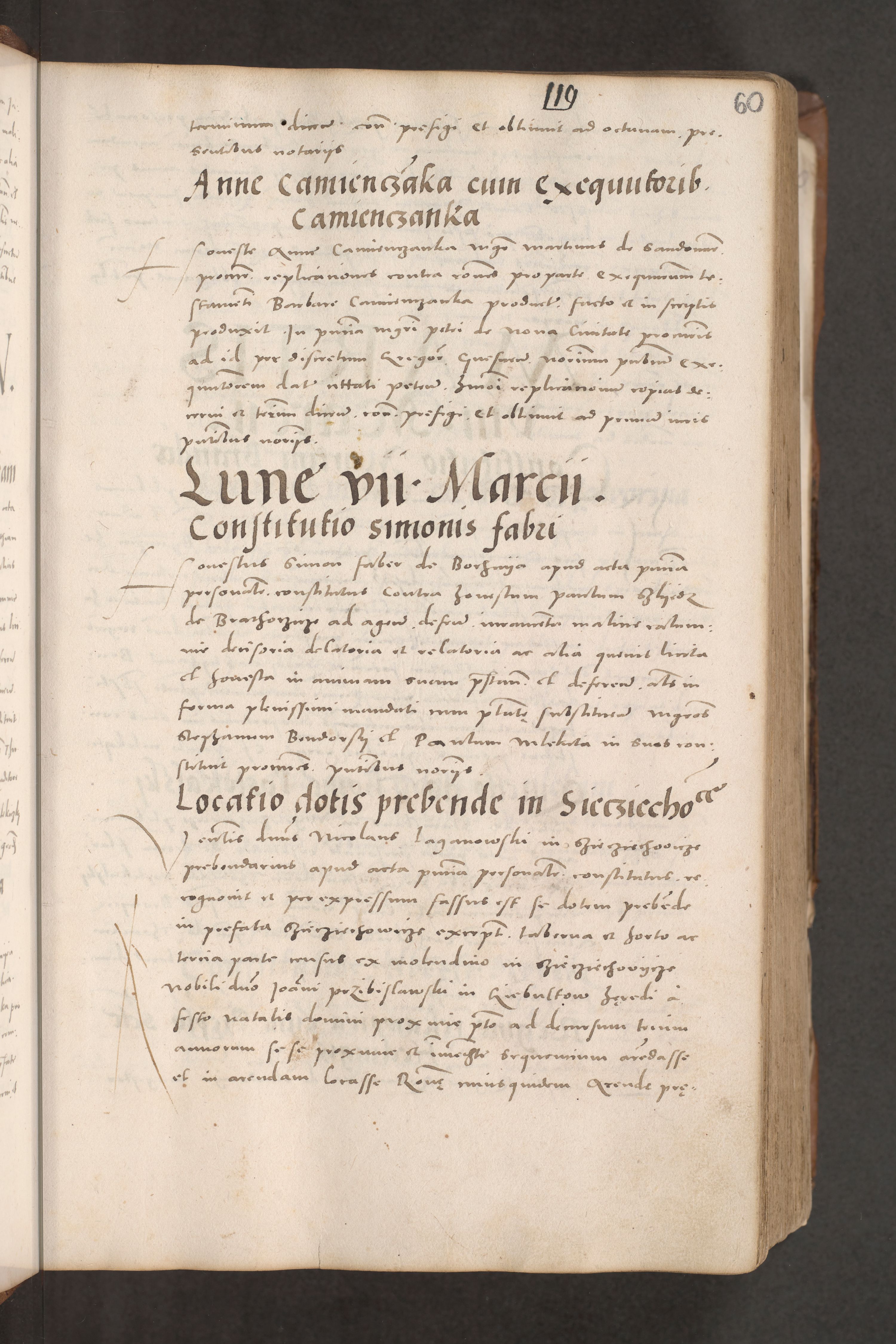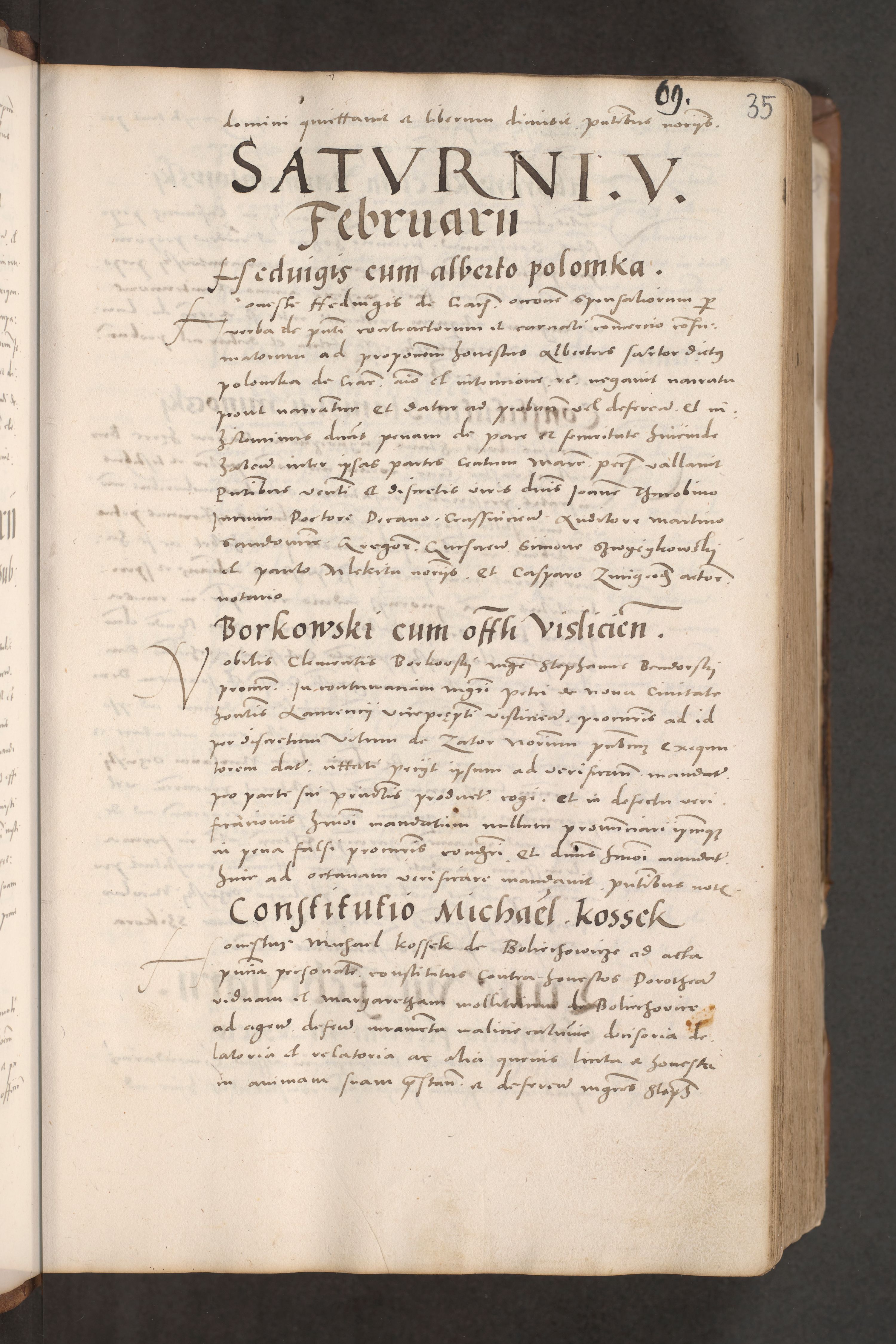 Acta actorum causarum, sententiarum tam diffinivarum quam interloquutoriarum, decretorum, obligationum, quietationum et constitutionum procuratorum coram reverendo domino Stanislao Szlomowski praeposito Calissieensi, archidiacono Sandecensi, canonico vicarioque in spiritualibus generali Cracoviensi ad annum Domini millesimum quingentesimum quinquagesimum octavum, cuius indicio prima, pontificatus sanctissimi domini nostri Pauli divina providencia pape quarti, anno illius tercio, feliciter sequuntur.