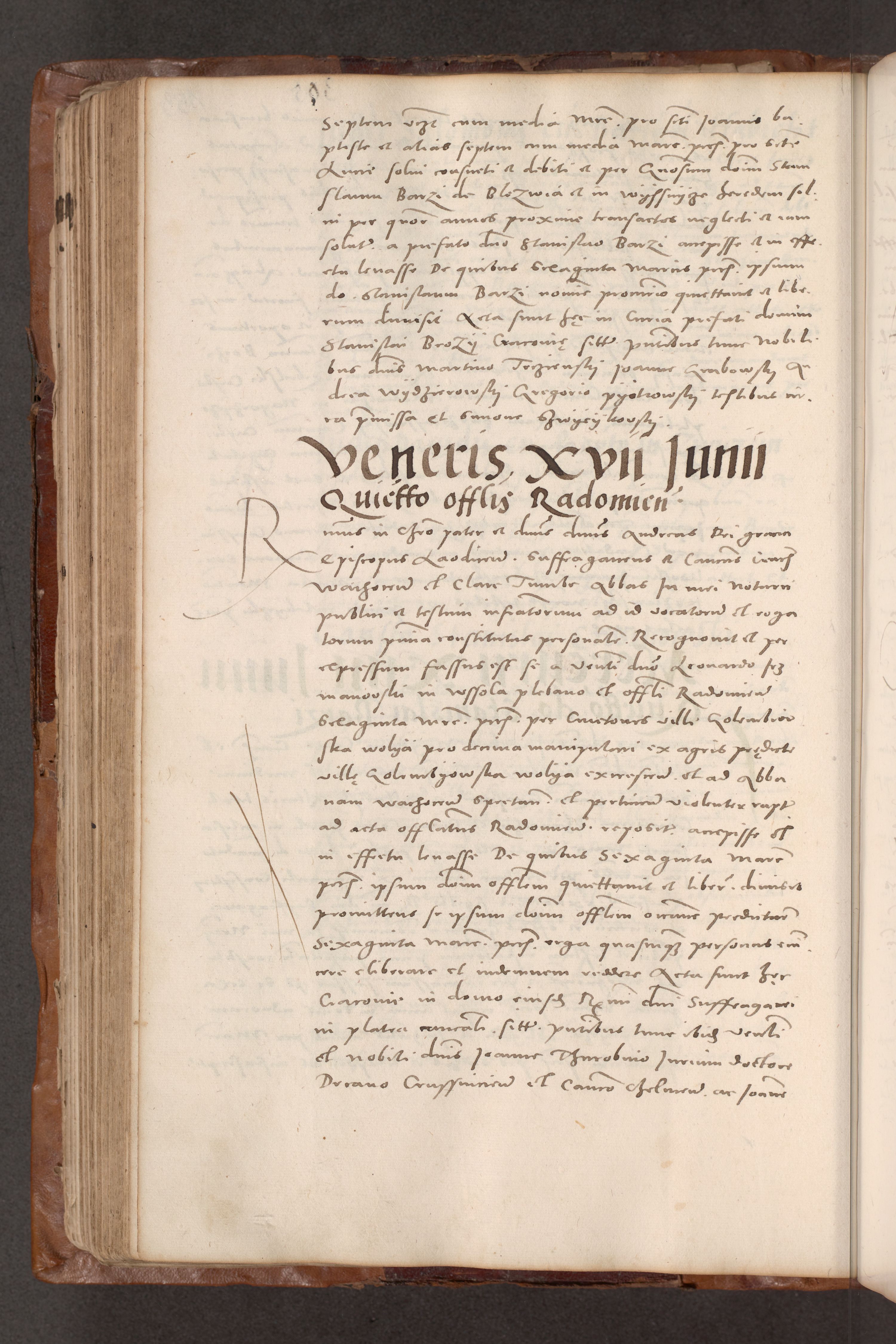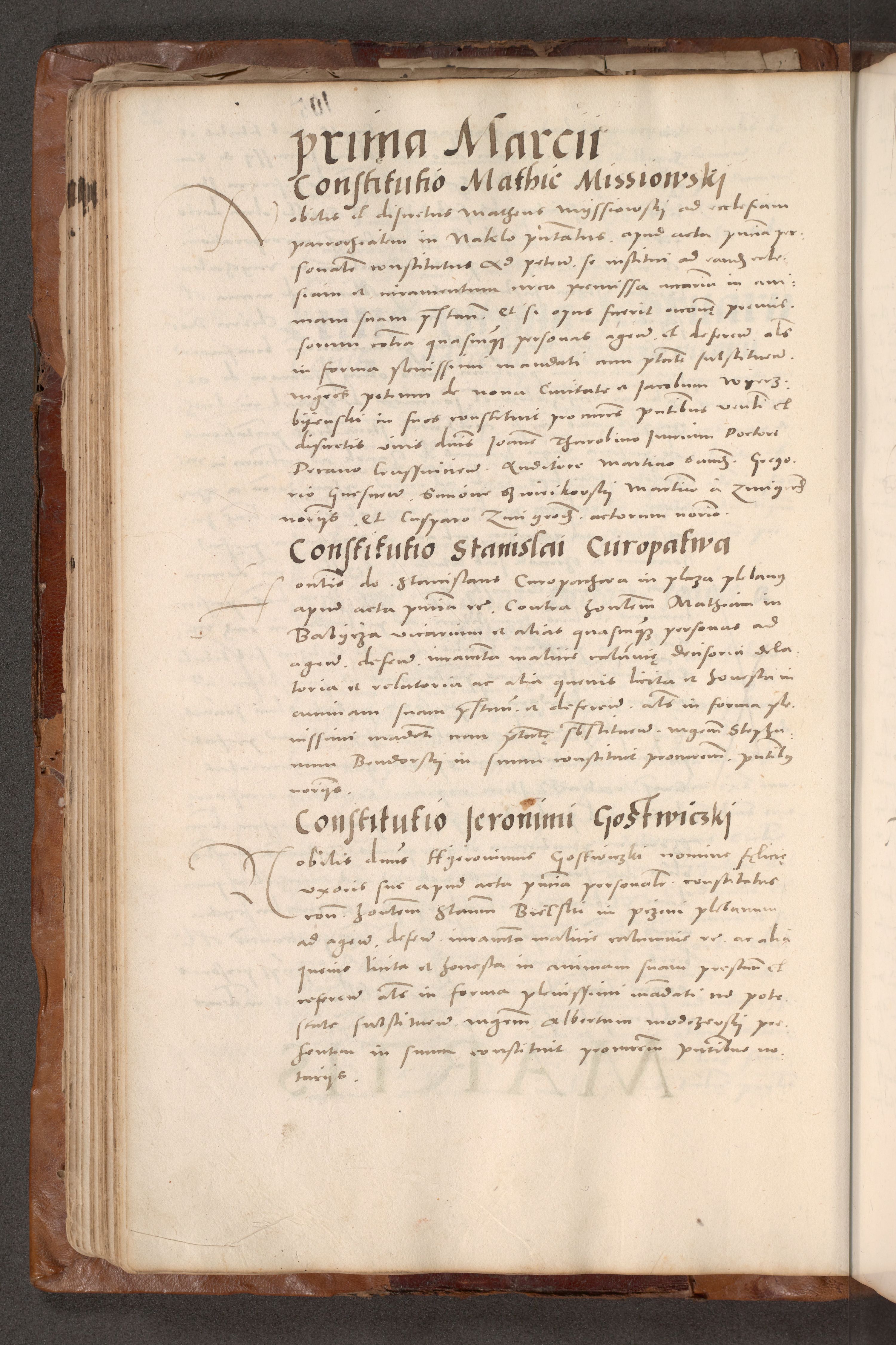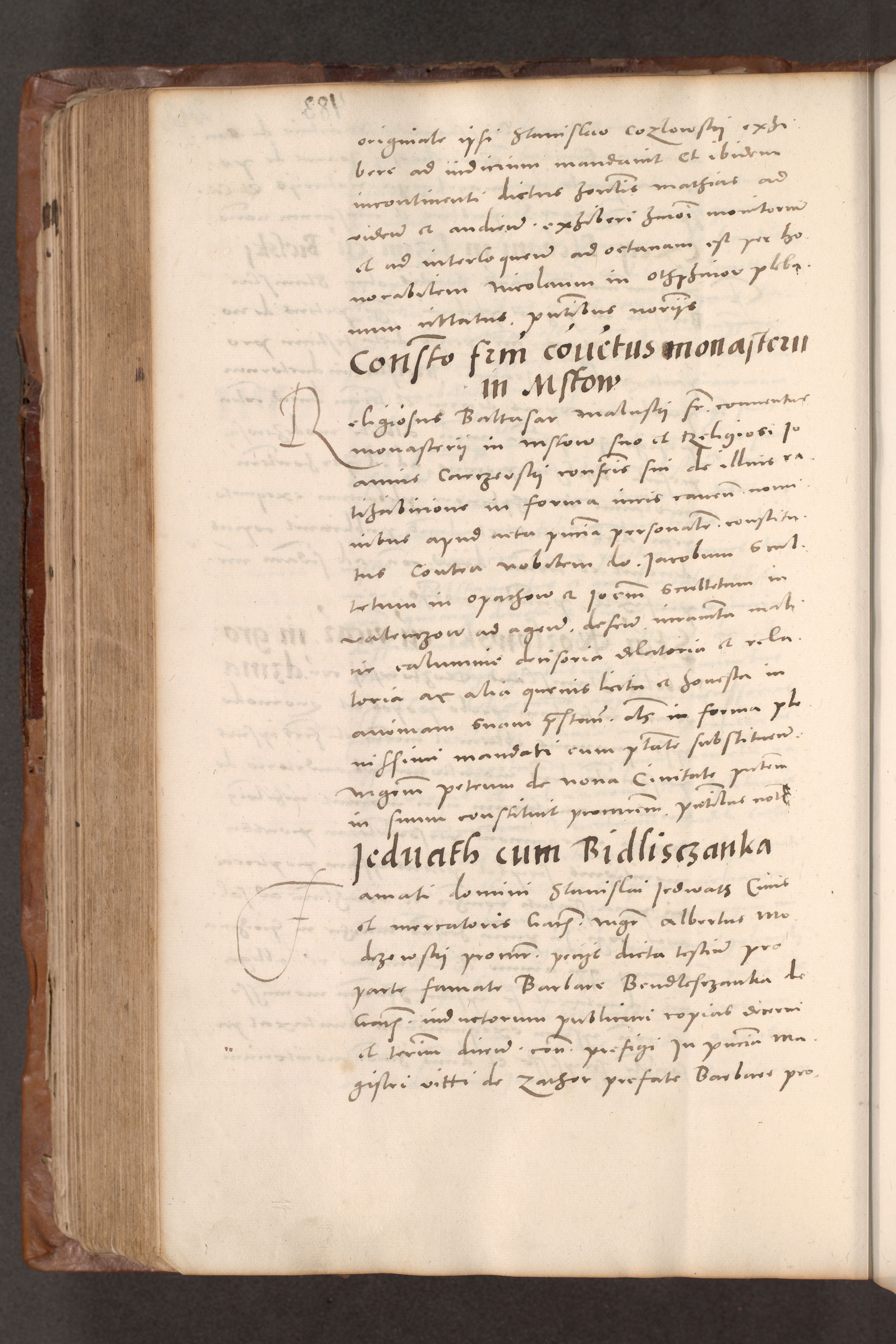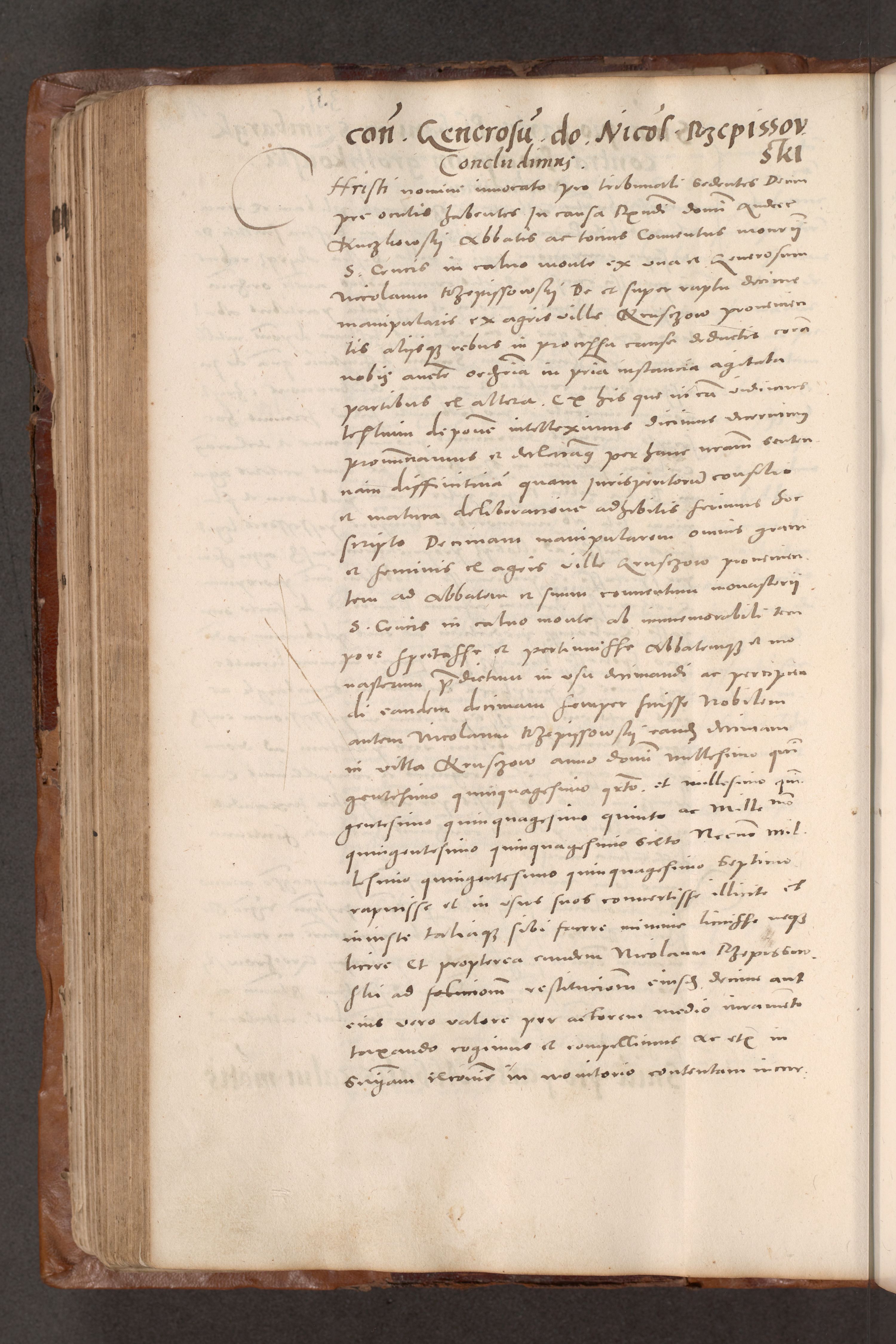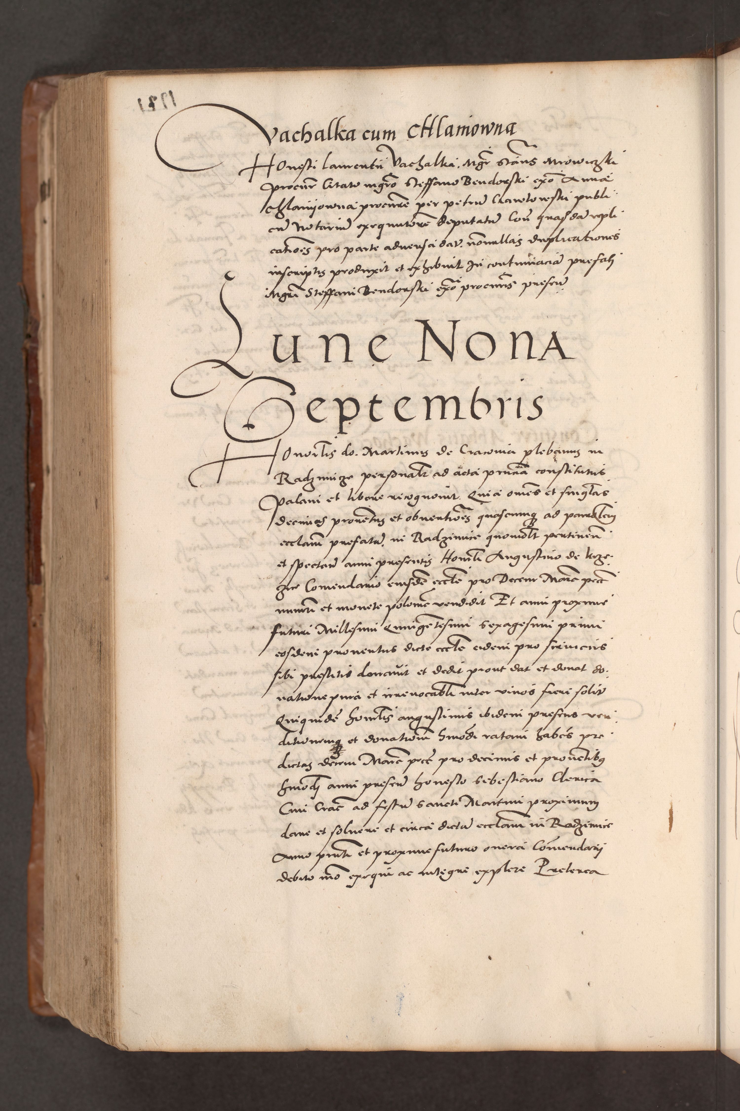 Acta actorum causarum, sententiarum tam diffinivarum quam interloquutoriarum, decretorum, obligationum, quietationum et constitutionum procuratorum coram reverendo domino Stanislao Szlomowski praeposito Calissieensi, archidiacono Sandecensi, canonico vicarioque in spiritualibus generali Cracoviensi ad annum Domini millesimum quingentesimum quinquagesimum octavum, cuius indicio prima, pontificatus sanctissimi domini nostri Pauli divina providencia pape quarti, anno illius tercio, feliciter sequuntur.