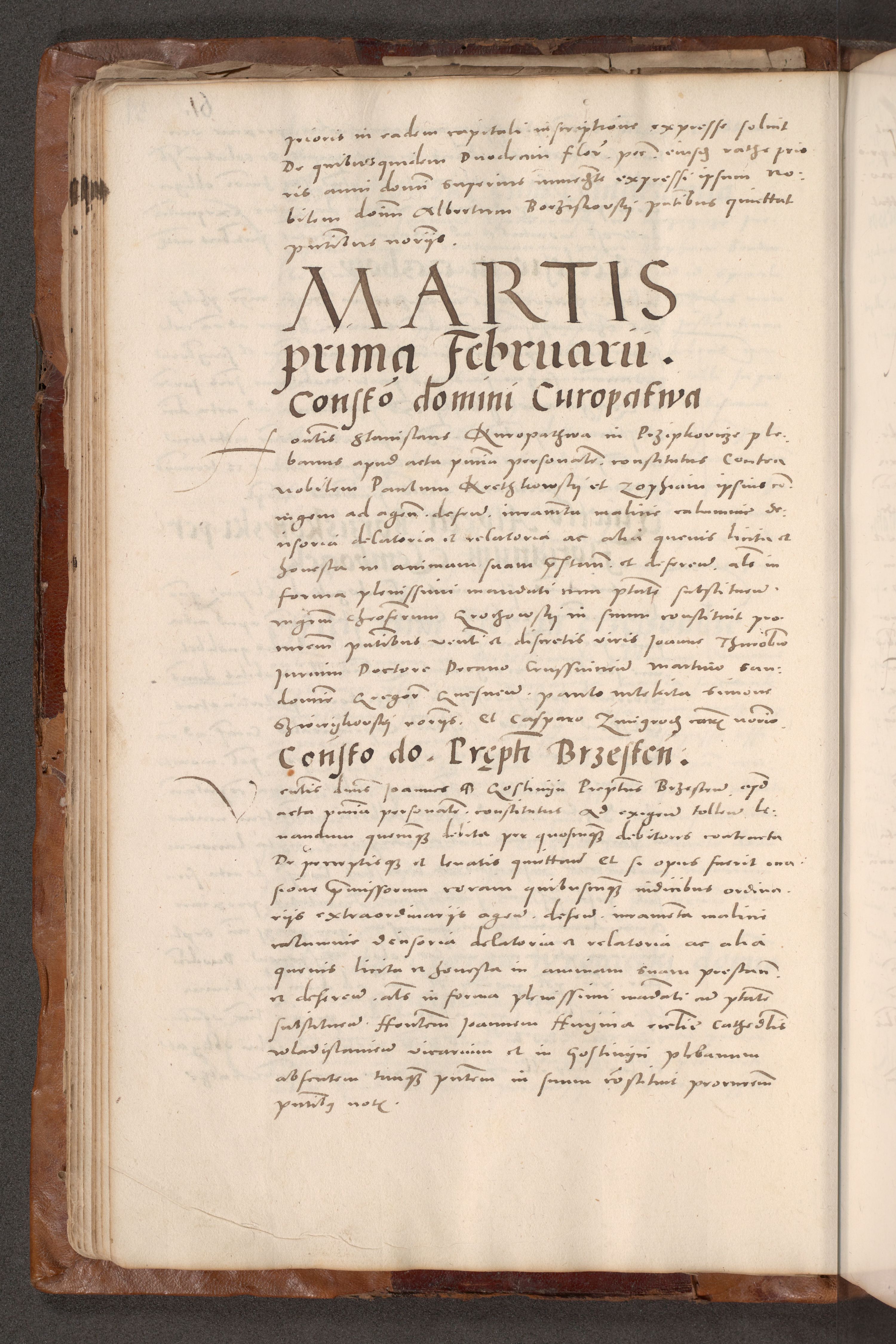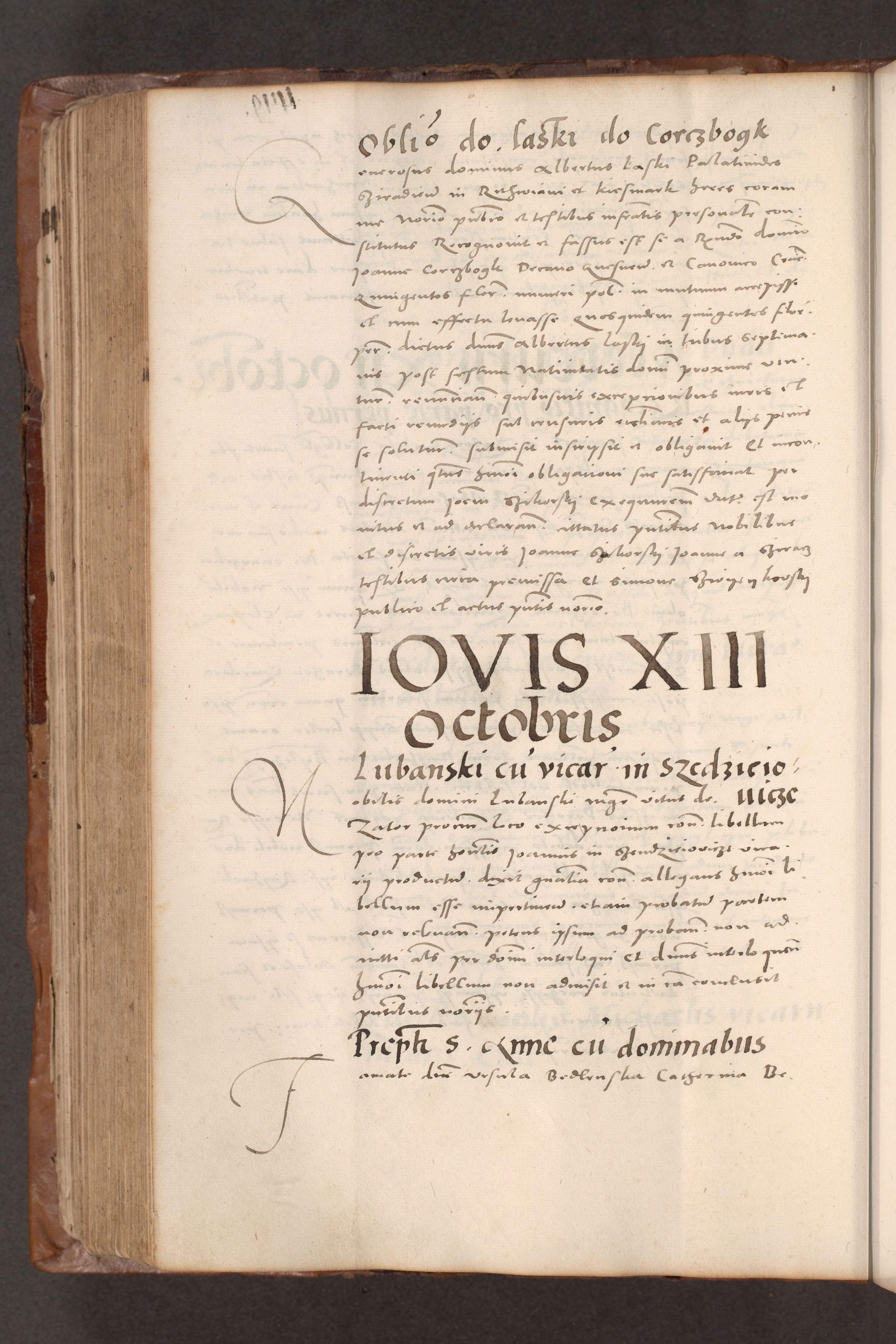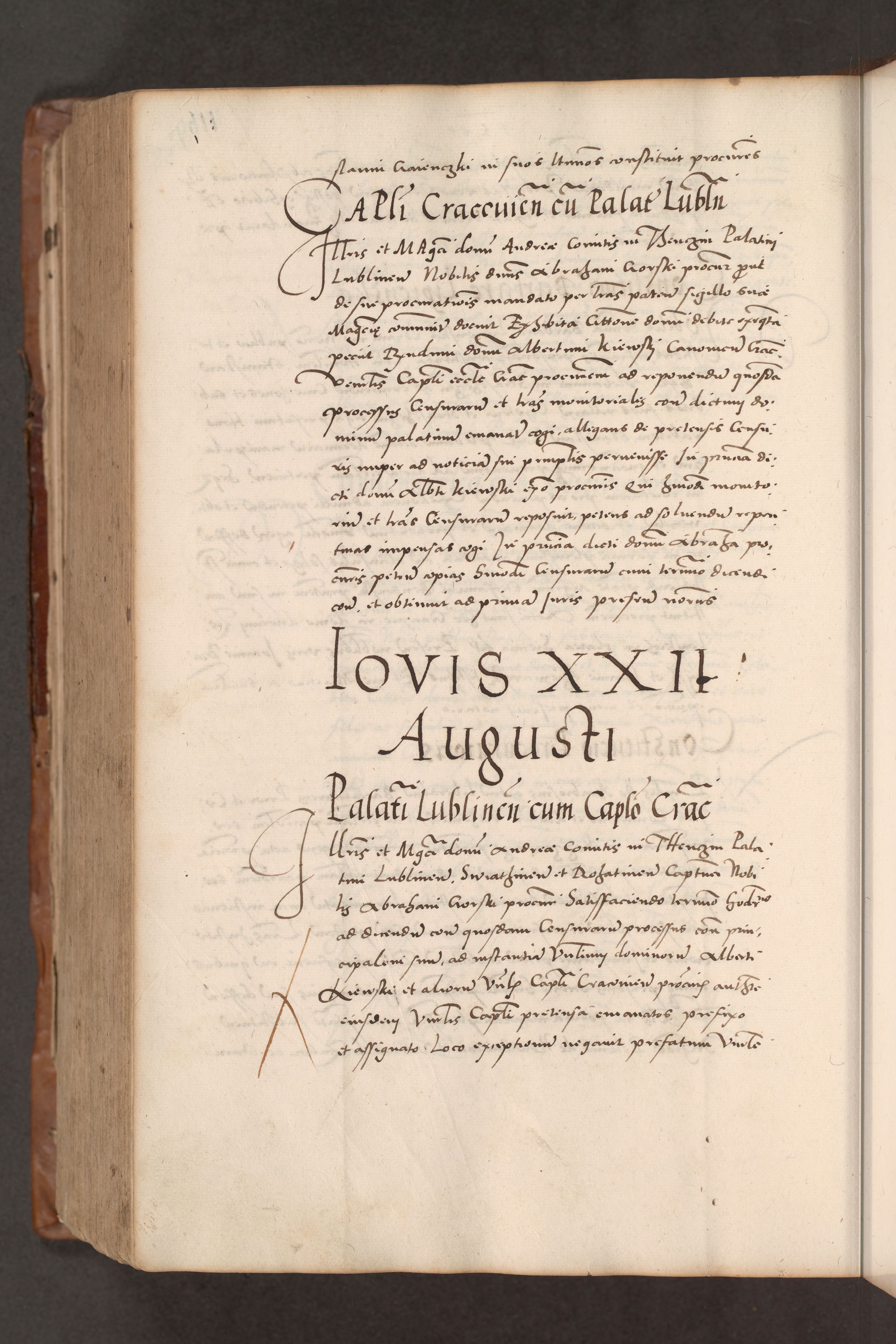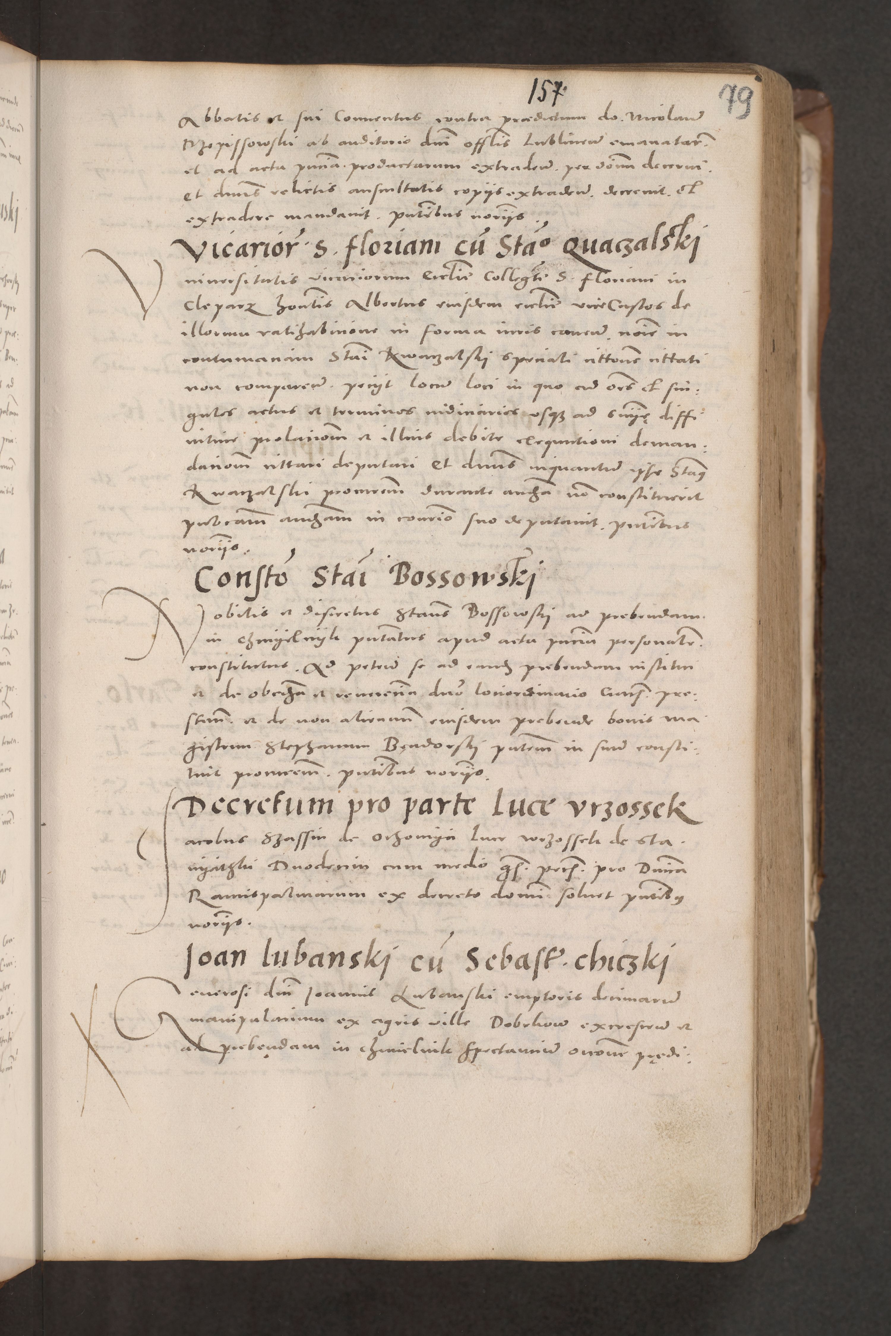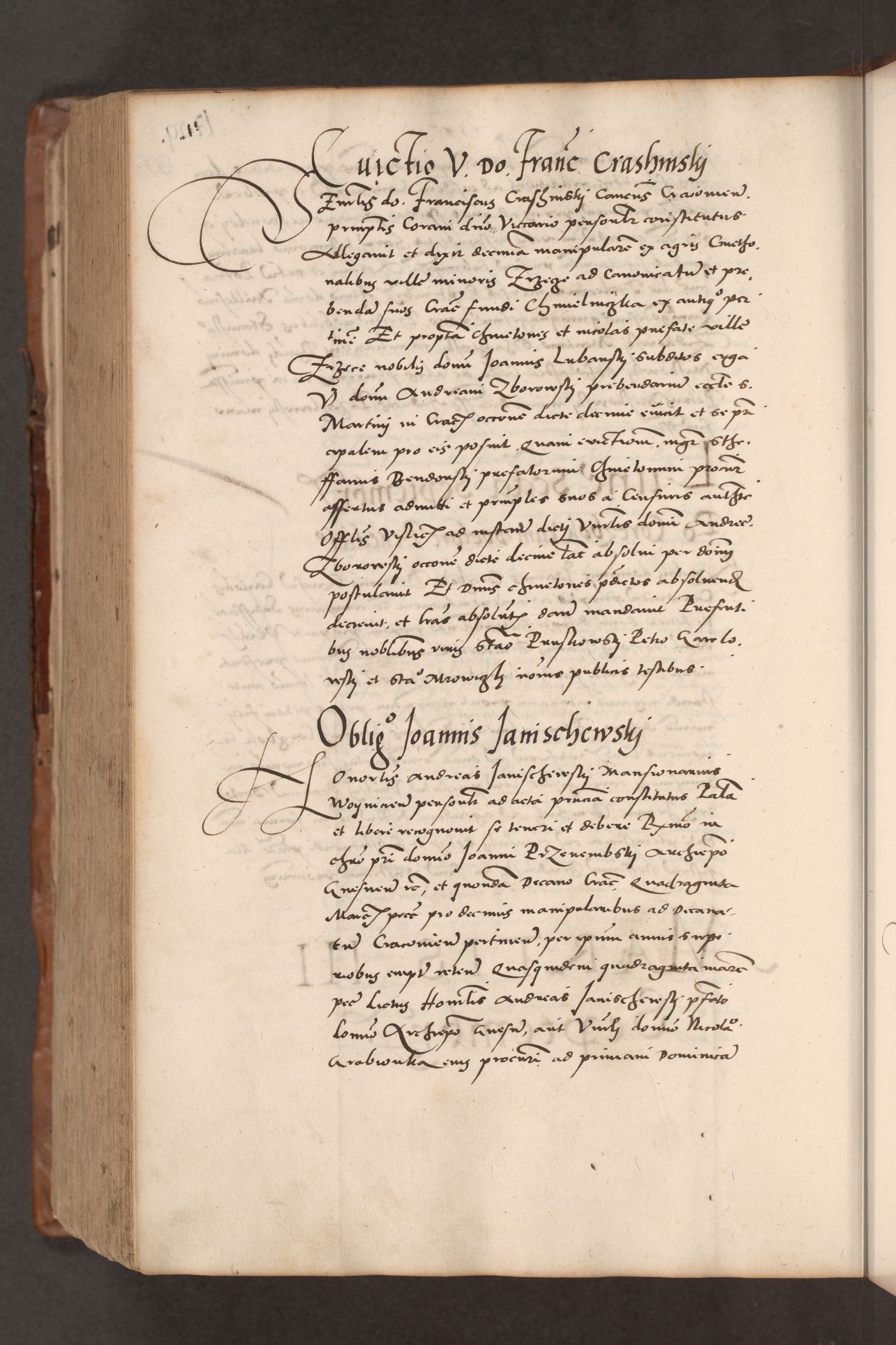 Acta actorum causarum, sententiarum tam diffinivarum quam interloquutoriarum, decretorum, obligationum, quietationum et constitutionum procuratorum coram reverendo domino Stanislao Szlomowski praeposito Calissieensi, archidiacono Sandecensi, canonico vicarioque in spiritualibus generali Cracoviensi ad annum Domini millesimum quingentesimum quinquagesimum octavum, cuius indicio prima, pontificatus sanctissimi domini nostri Pauli divina providencia pape quarti, anno illius tercio, feliciter sequuntur.