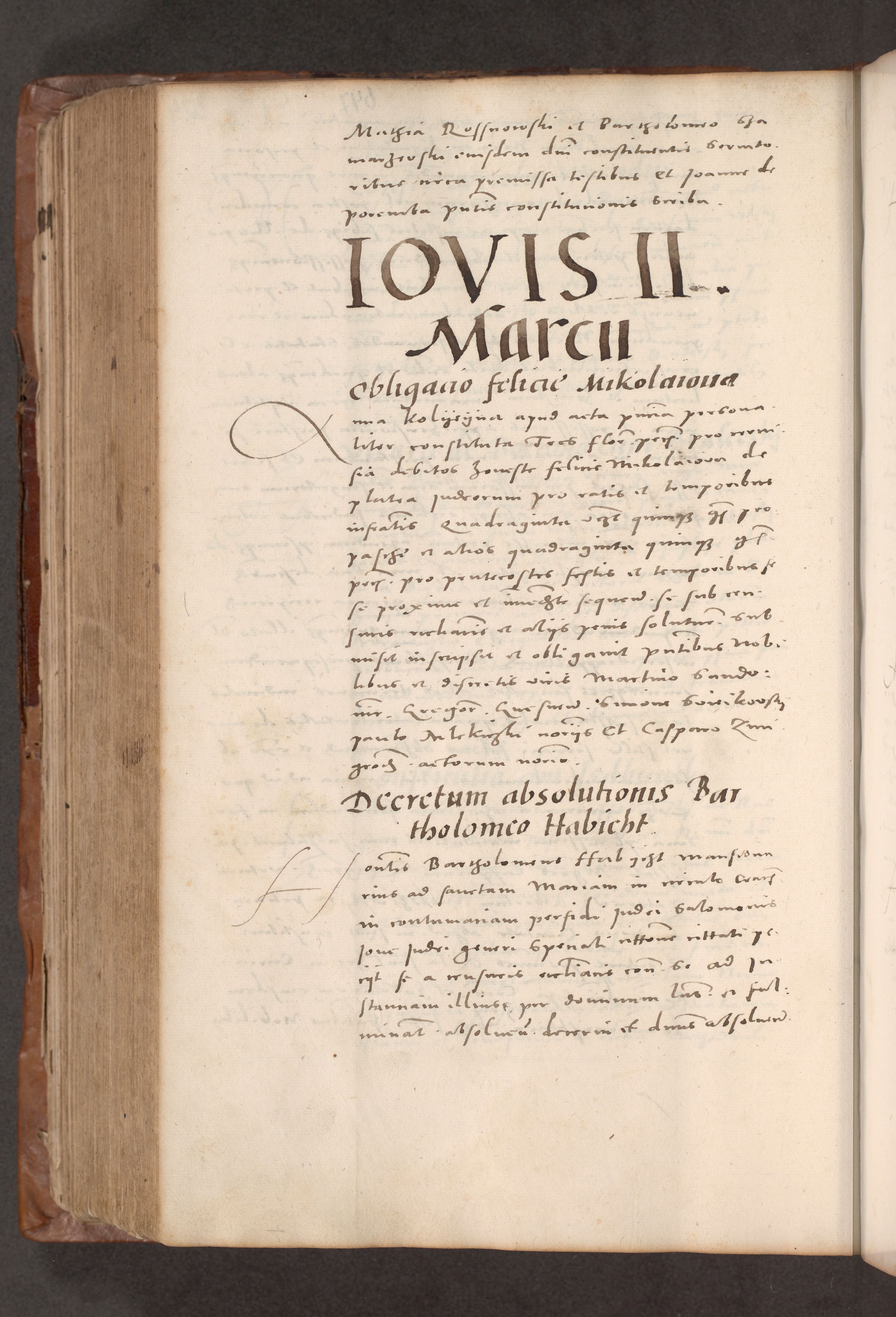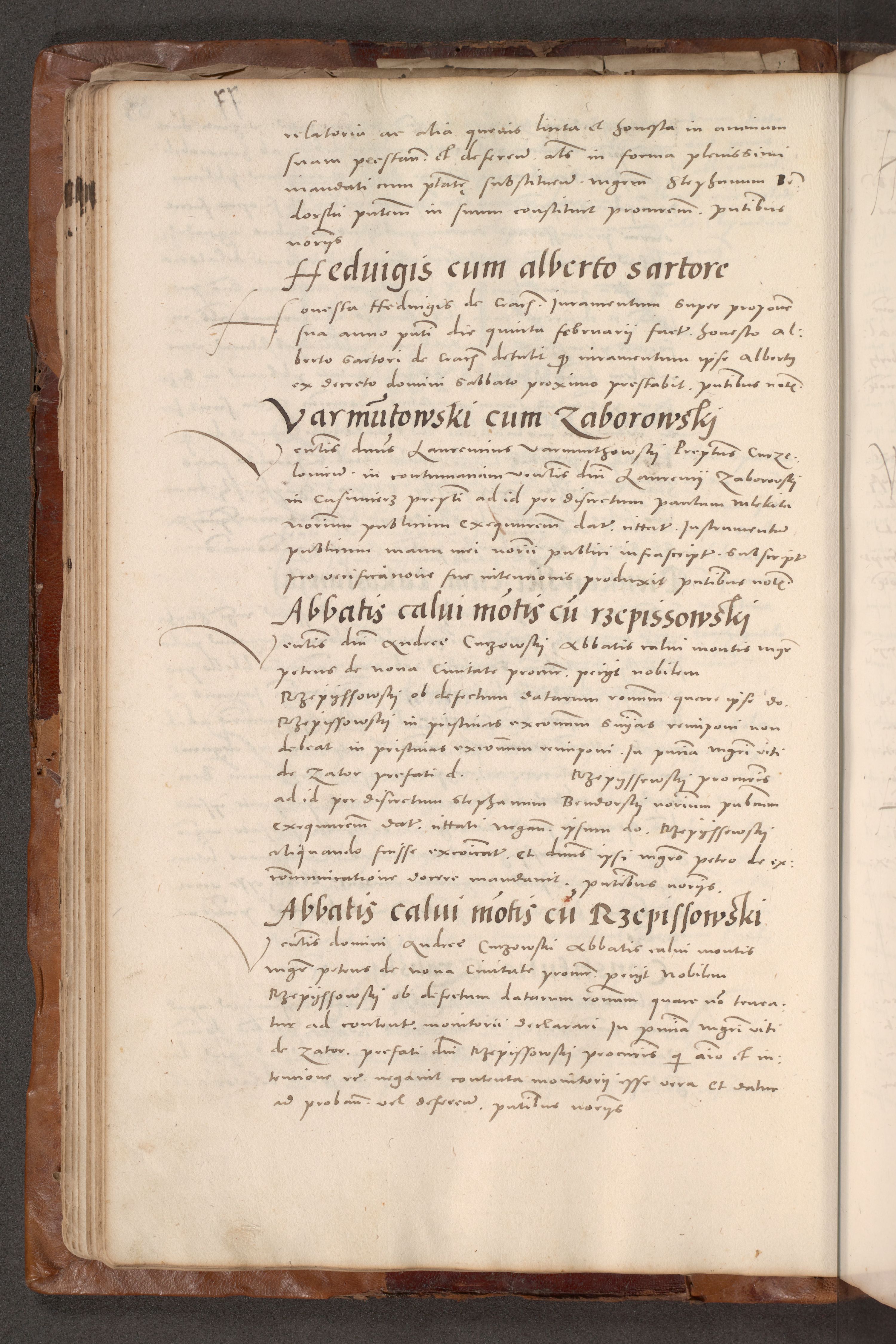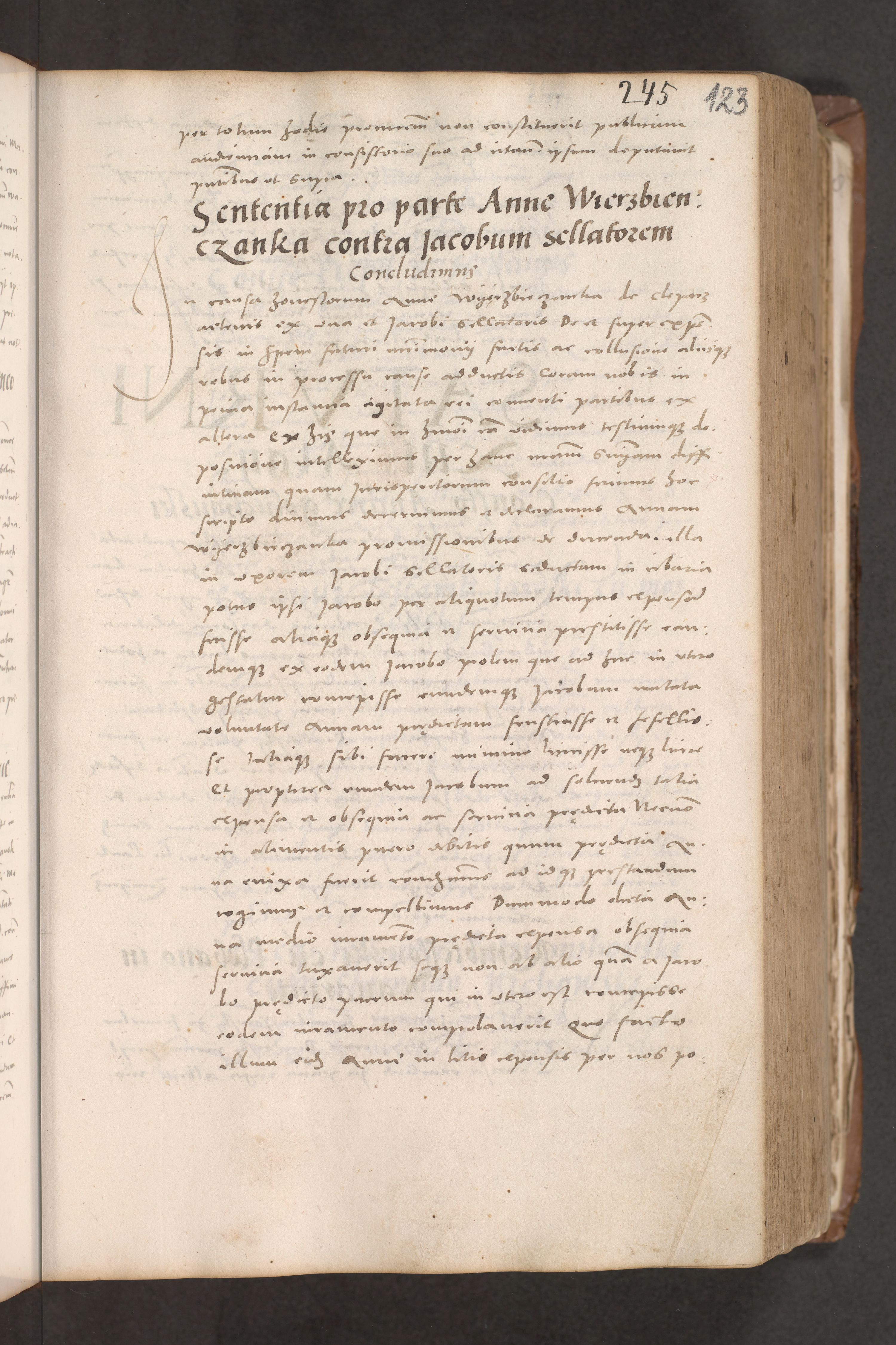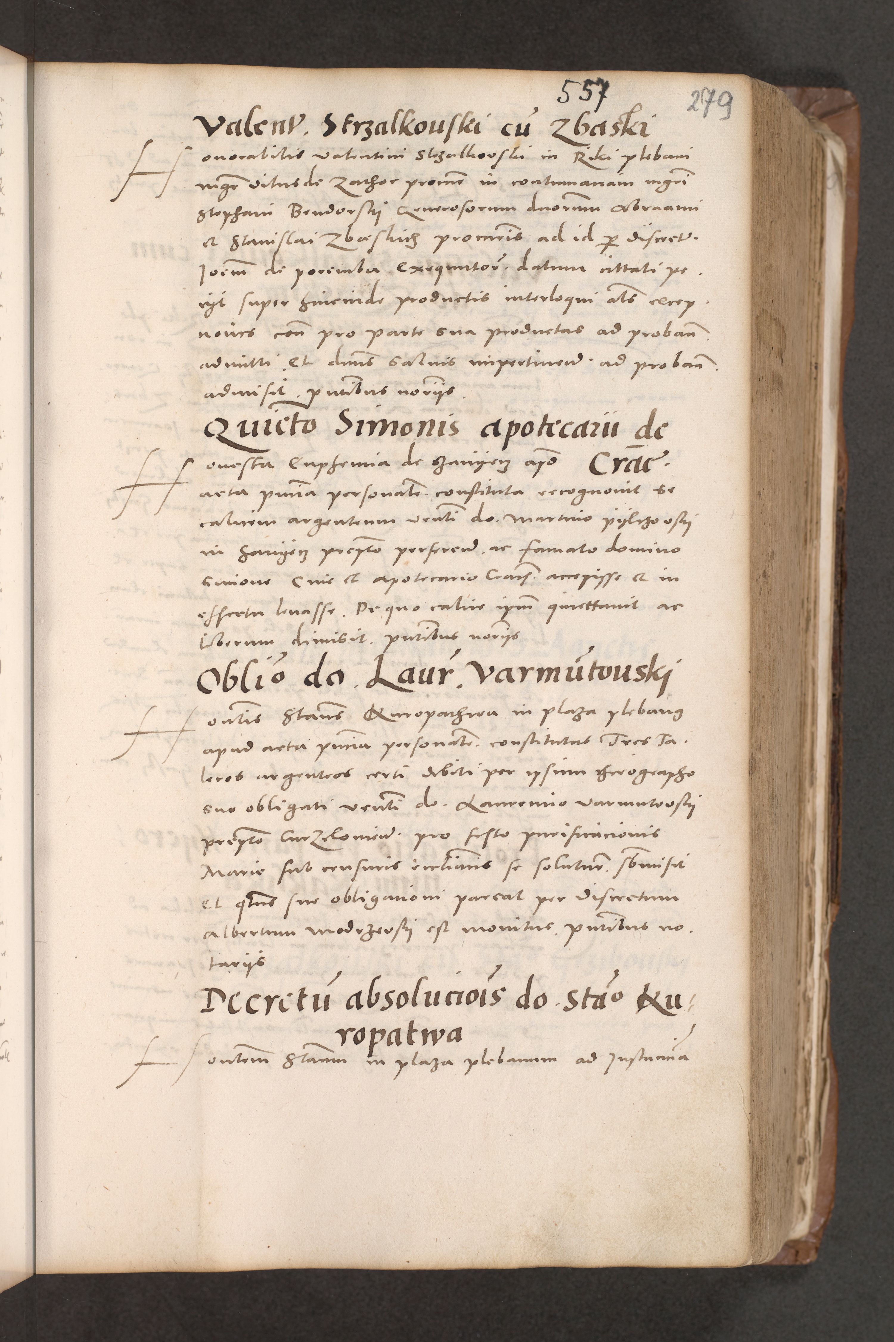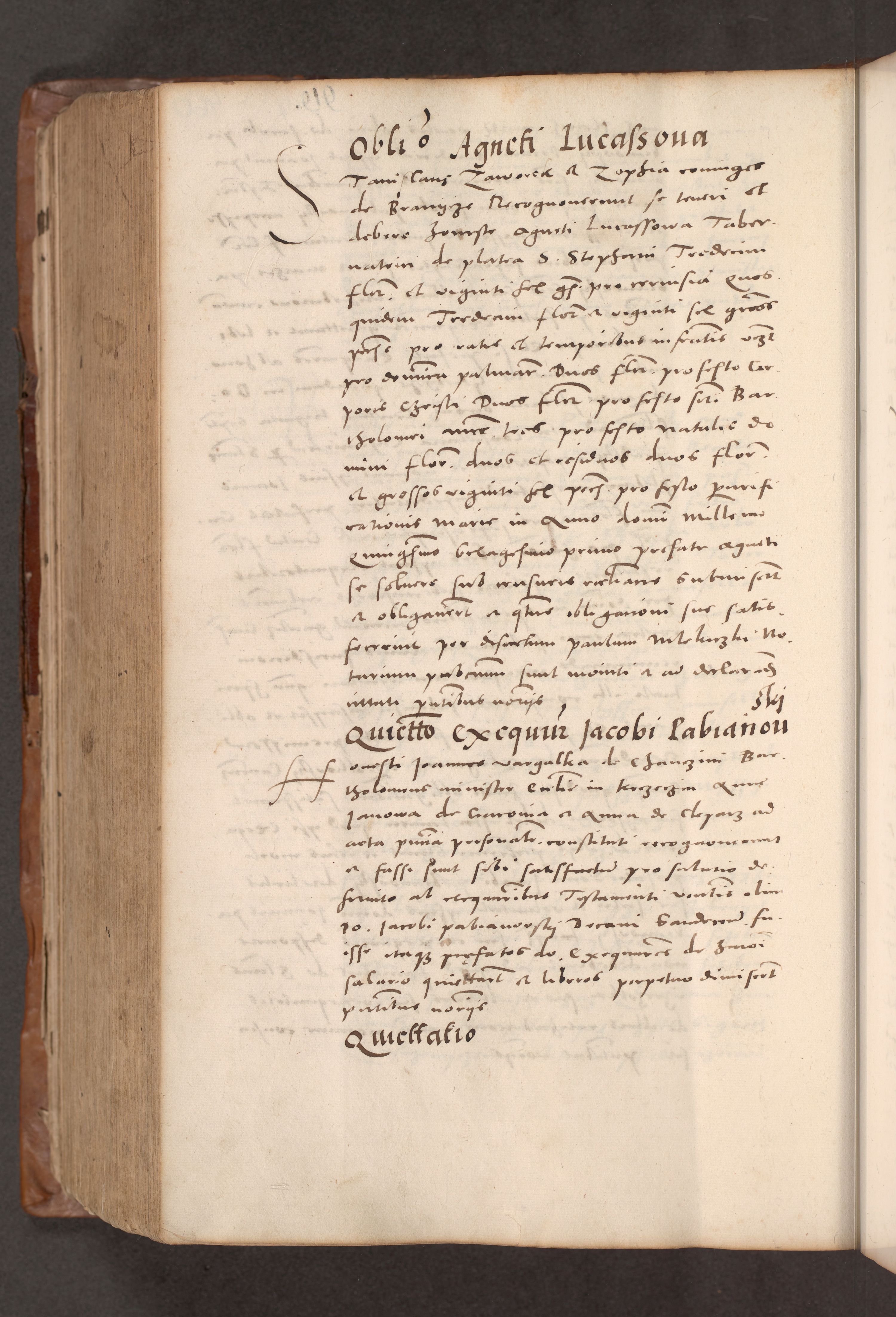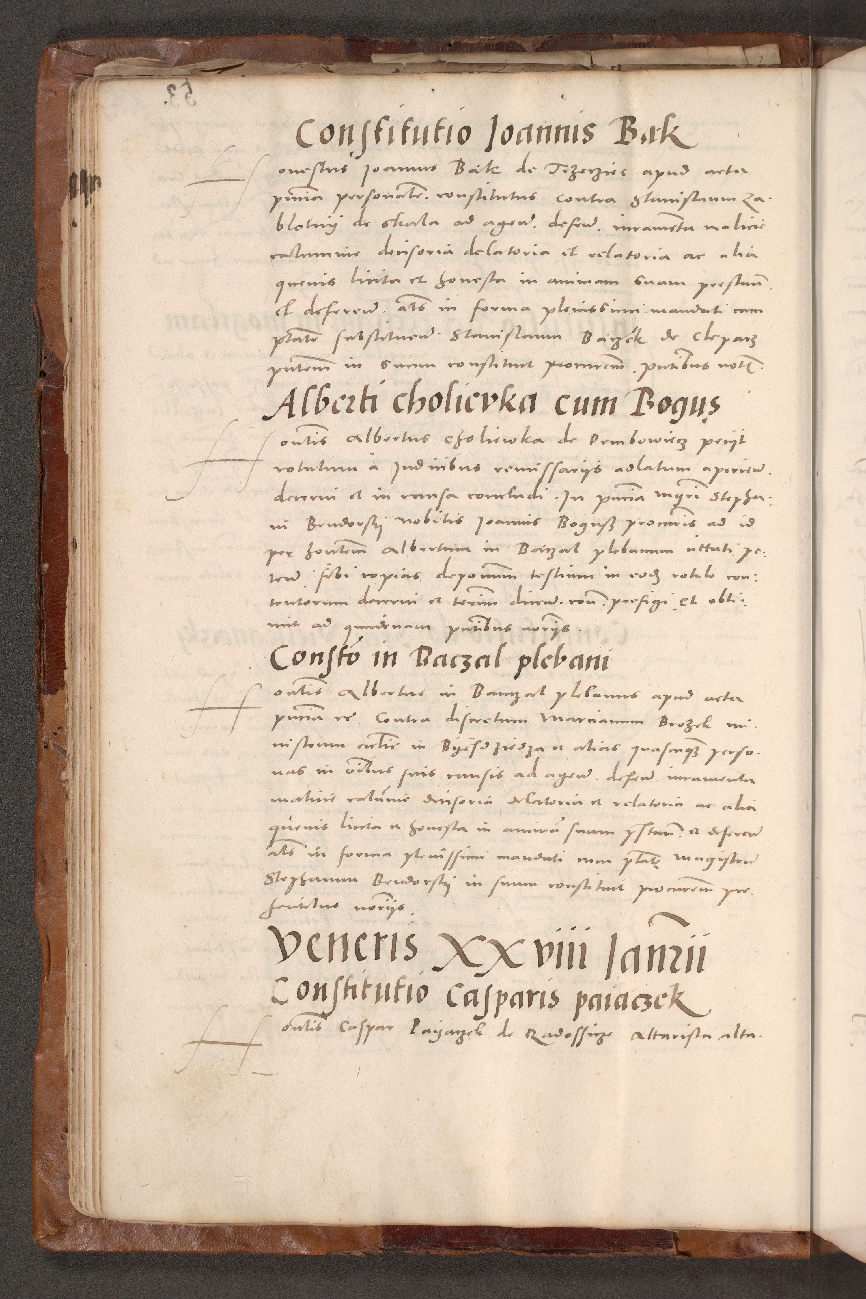 Acta actorum causarum, sententiarum tam diffinivarum quam interloquutoriarum, decretorum, obligationum, quietationum et constitutionum procuratorum coram reverendo domino Stanislao Szlomowski praeposito Calissieensi, archidiacono Sandecensi, canonico vicarioque in spiritualibus generali Cracoviensi ad annum Domini millesimum quingentesimum quinquagesimum octavum, cuius indicio prima, pontificatus sanctissimi domini nostri Pauli divina providencia pape quarti, anno illius tercio, feliciter sequuntur.