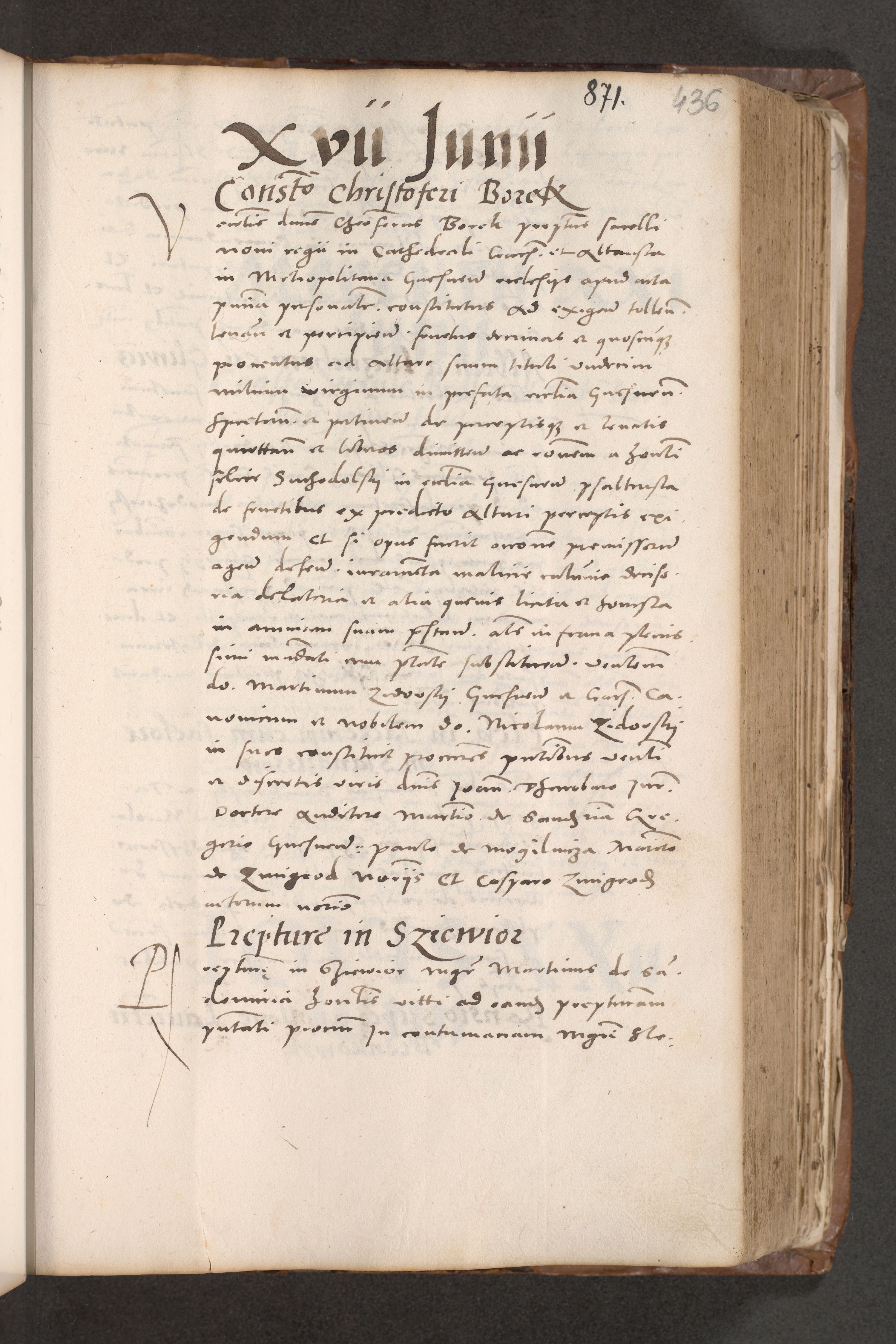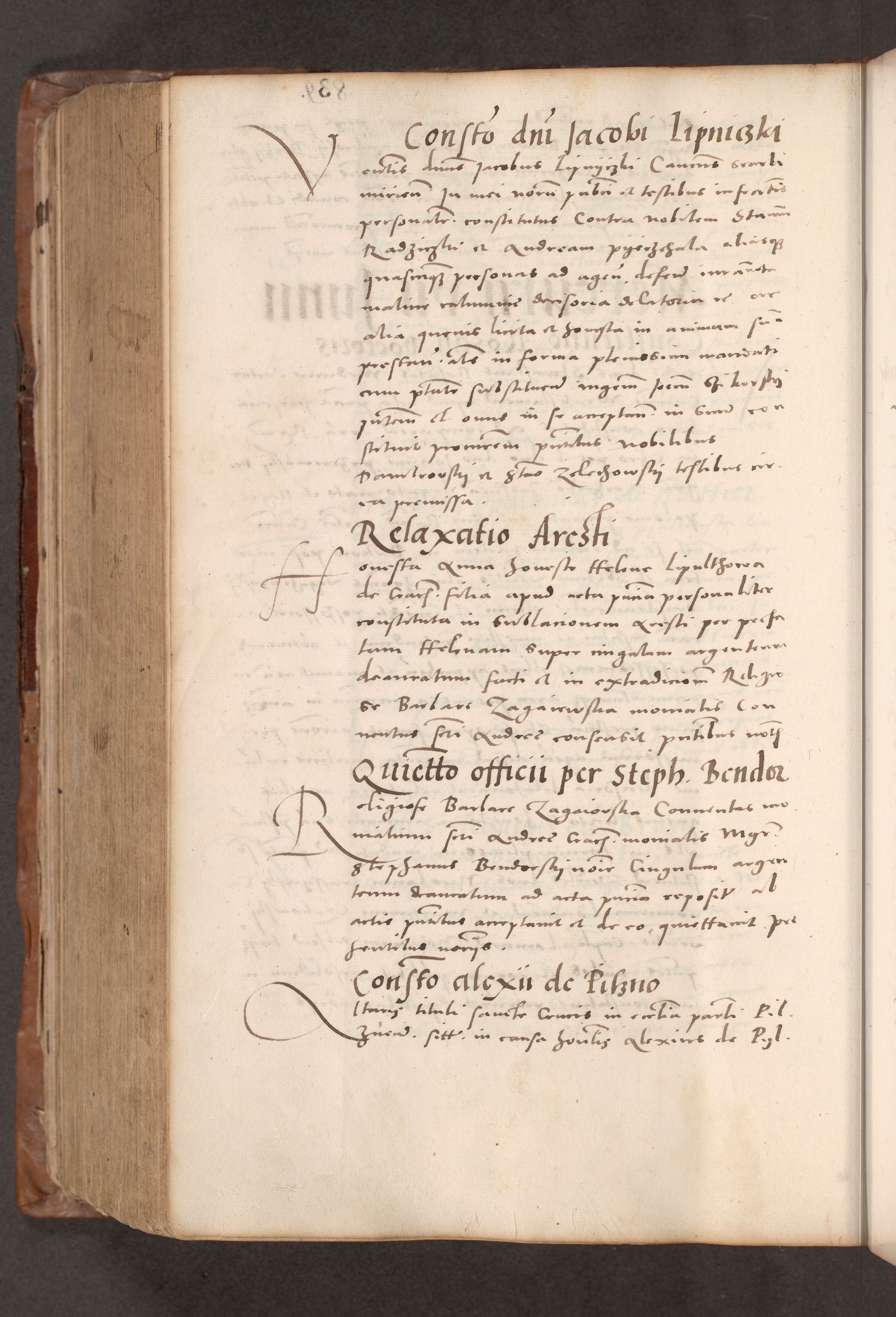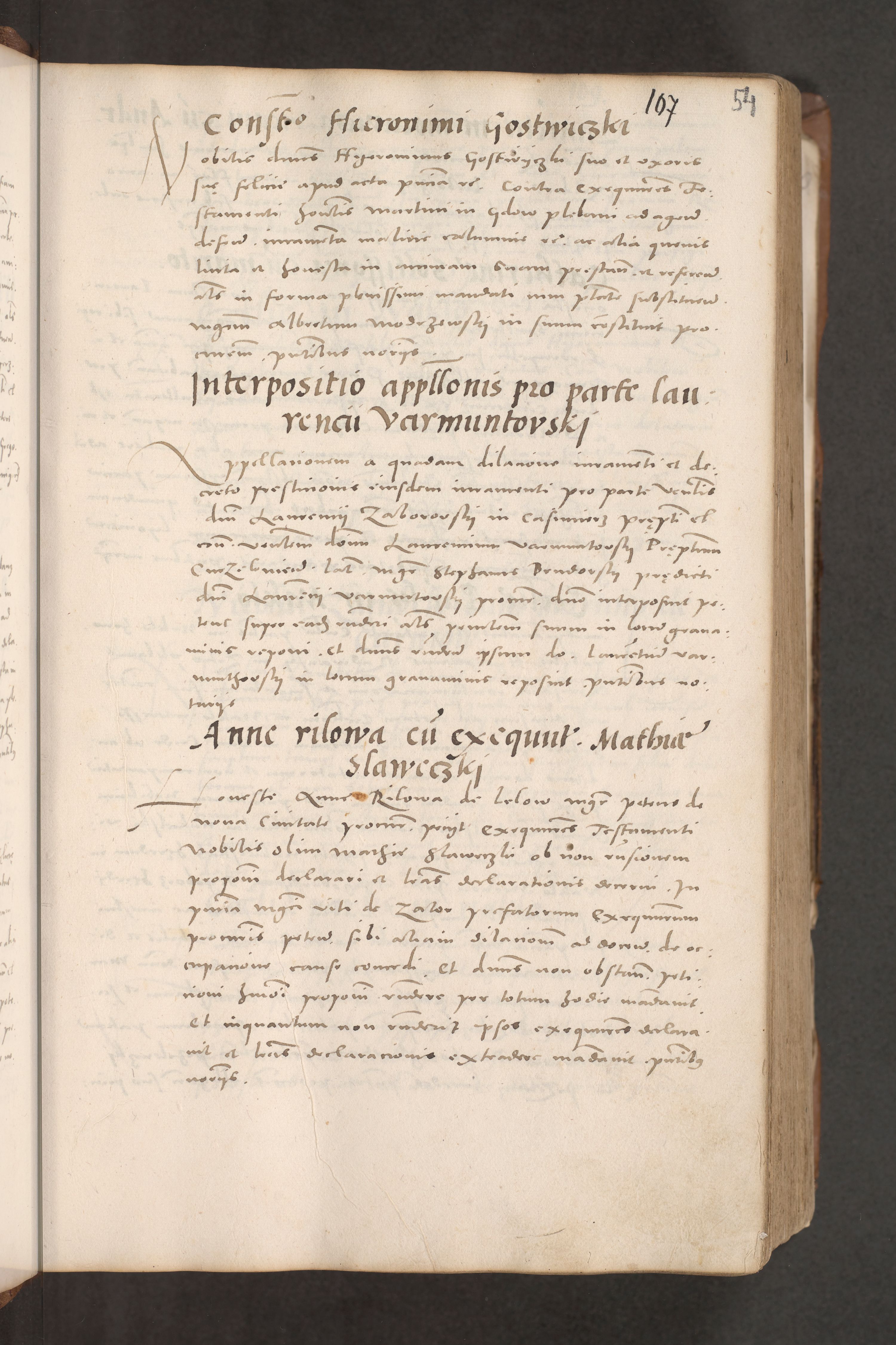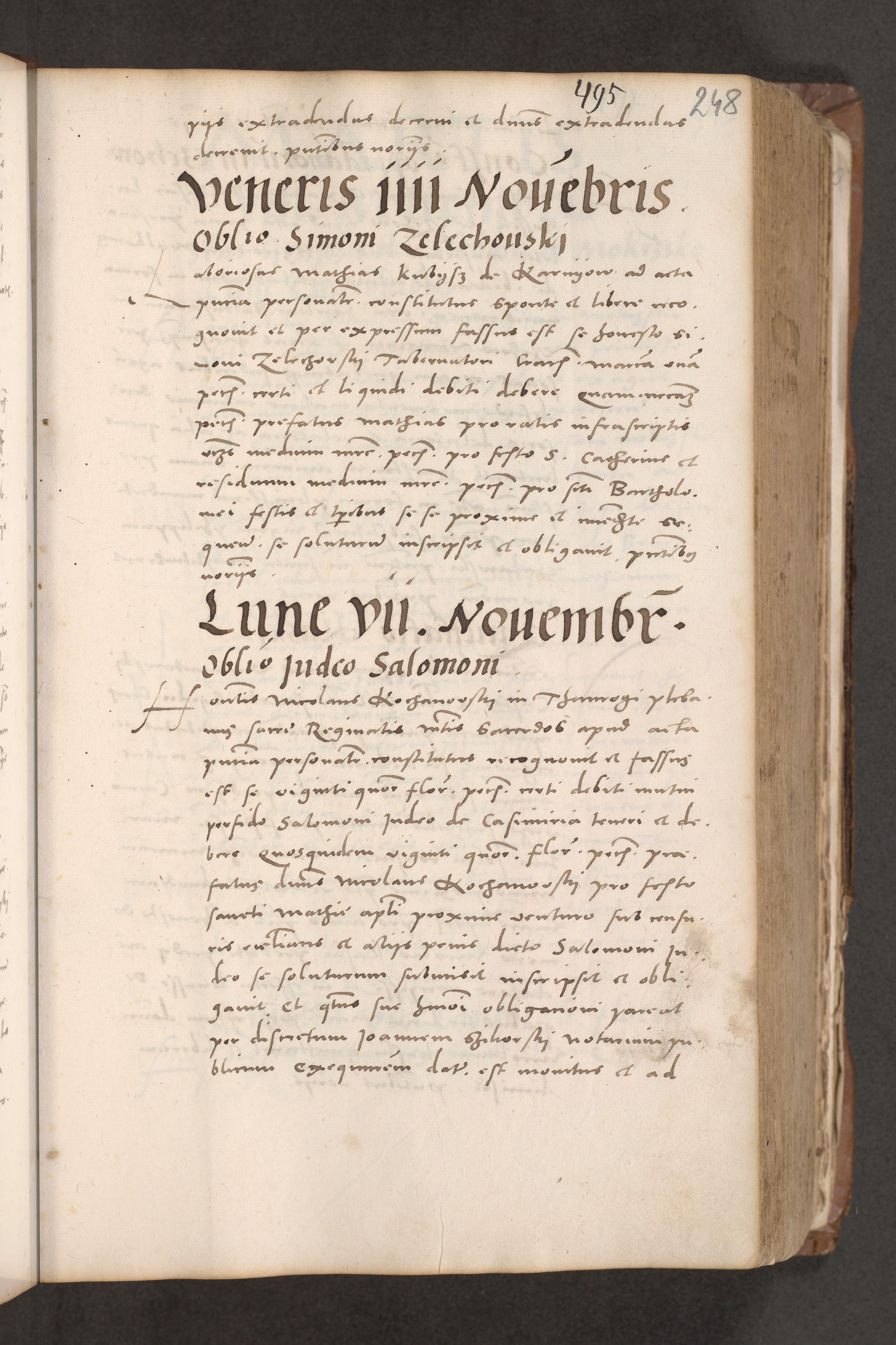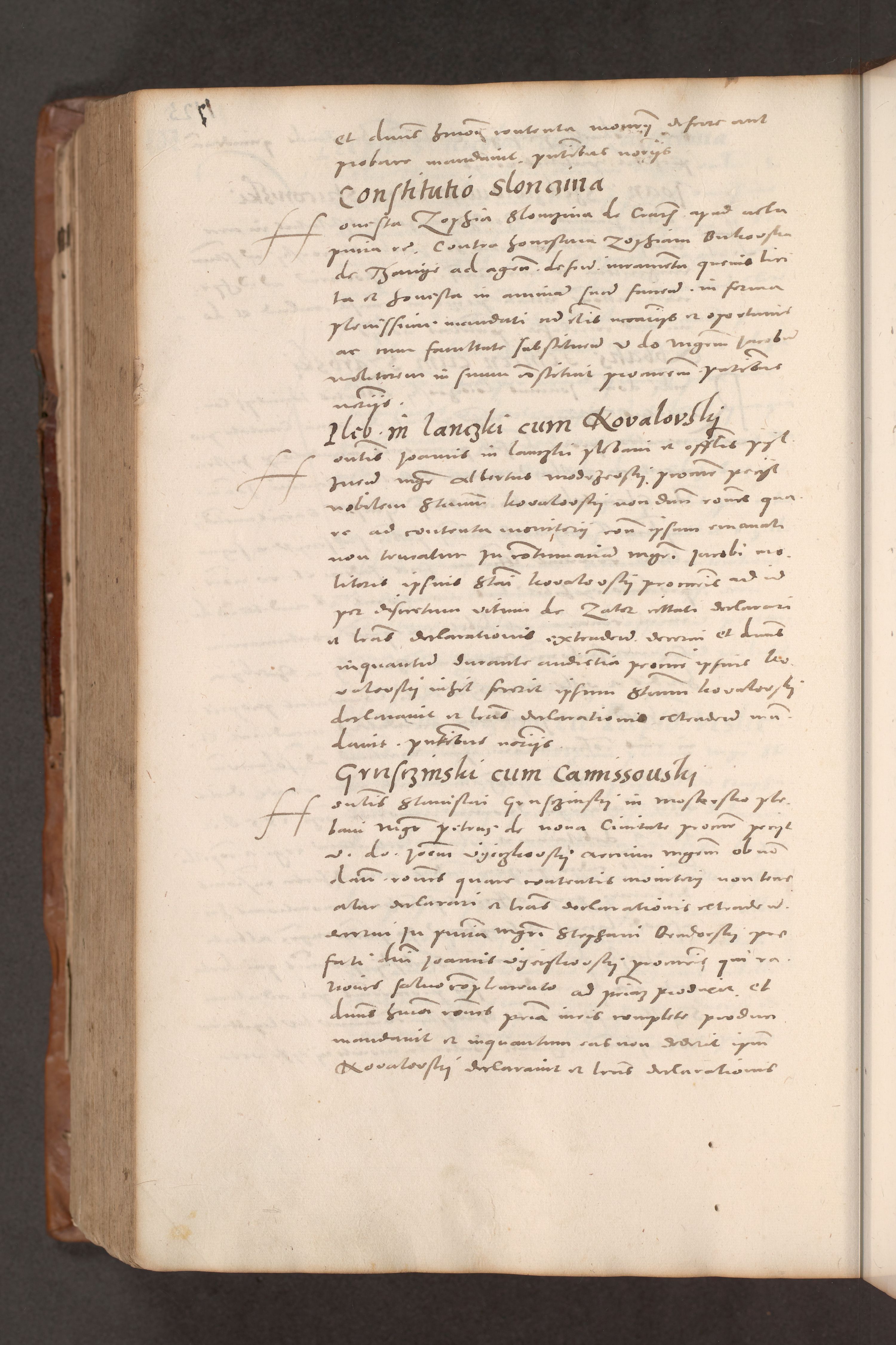 Acta actorum causarum, sententiarum tam diffinivarum quam interloquutoriarum, decretorum, obligationum, quietationum et constitutionum procuratorum coram reverendo domino Stanislao Szlomowski praeposito Calissieensi, archidiacono Sandecensi, canonico vicarioque in spiritualibus generali Cracoviensi ad annum Domini millesimum quingentesimum quinquagesimum octavum, cuius indicio prima, pontificatus sanctissimi domini nostri Pauli divina providencia pape quarti, anno illius tercio, feliciter sequuntur.