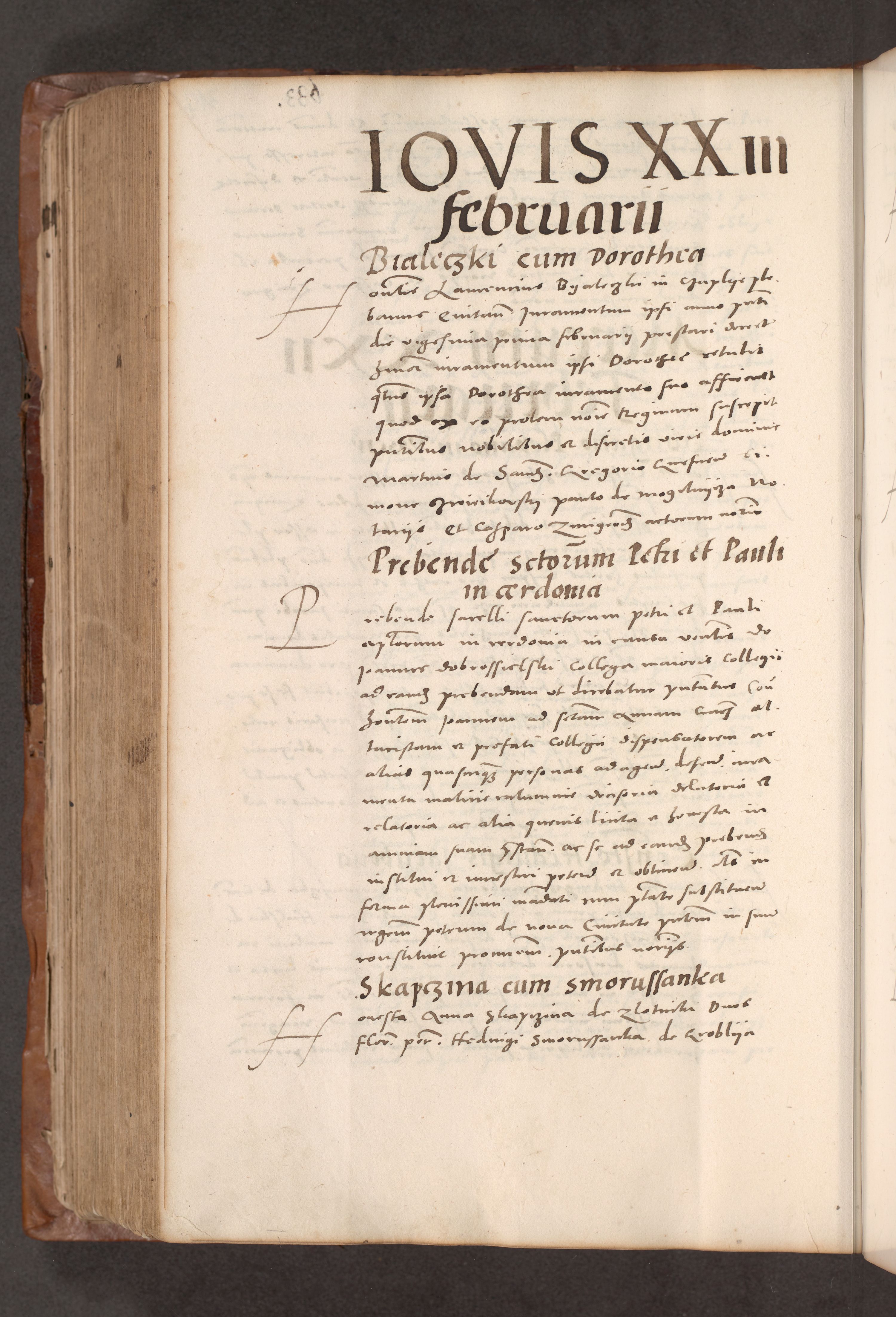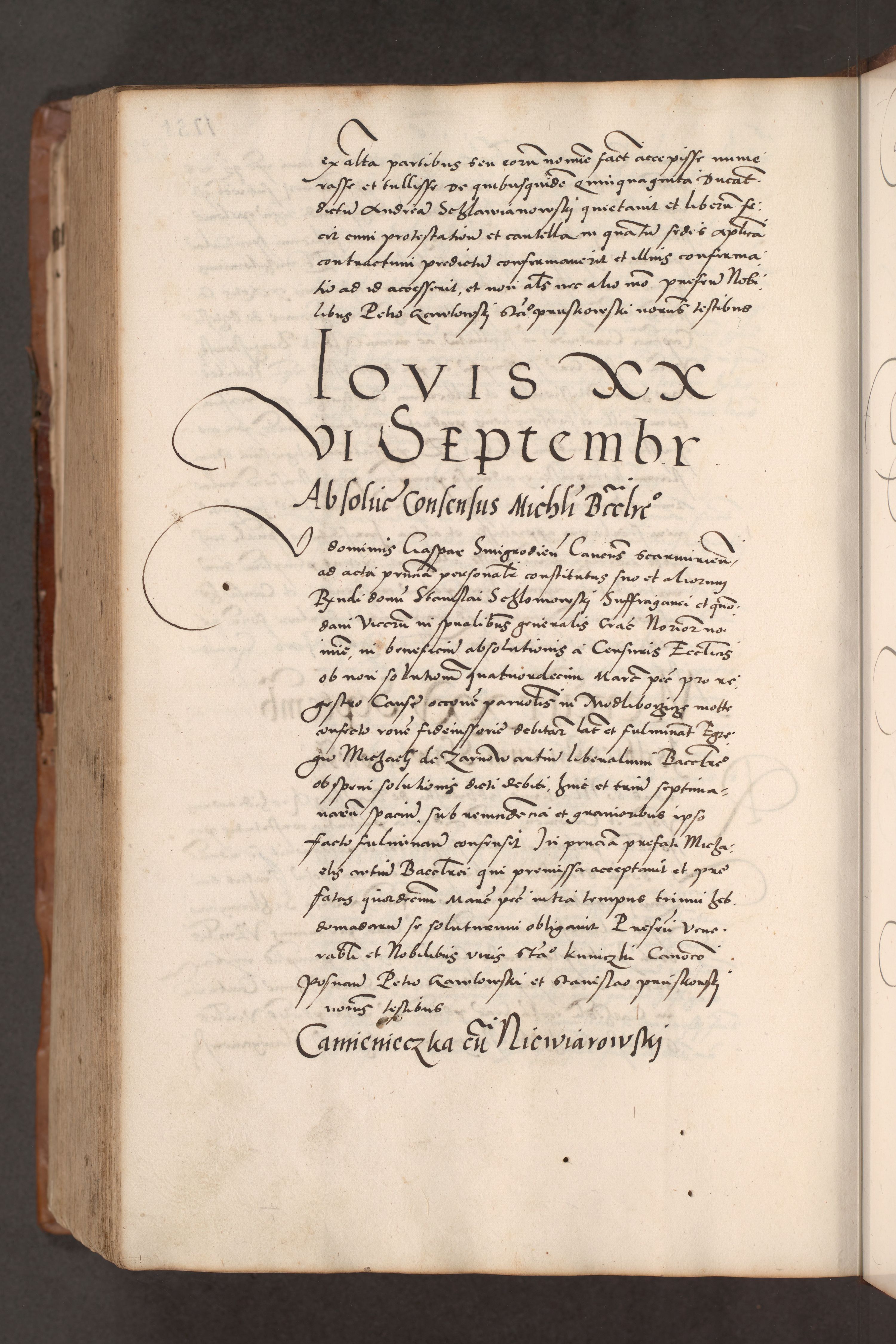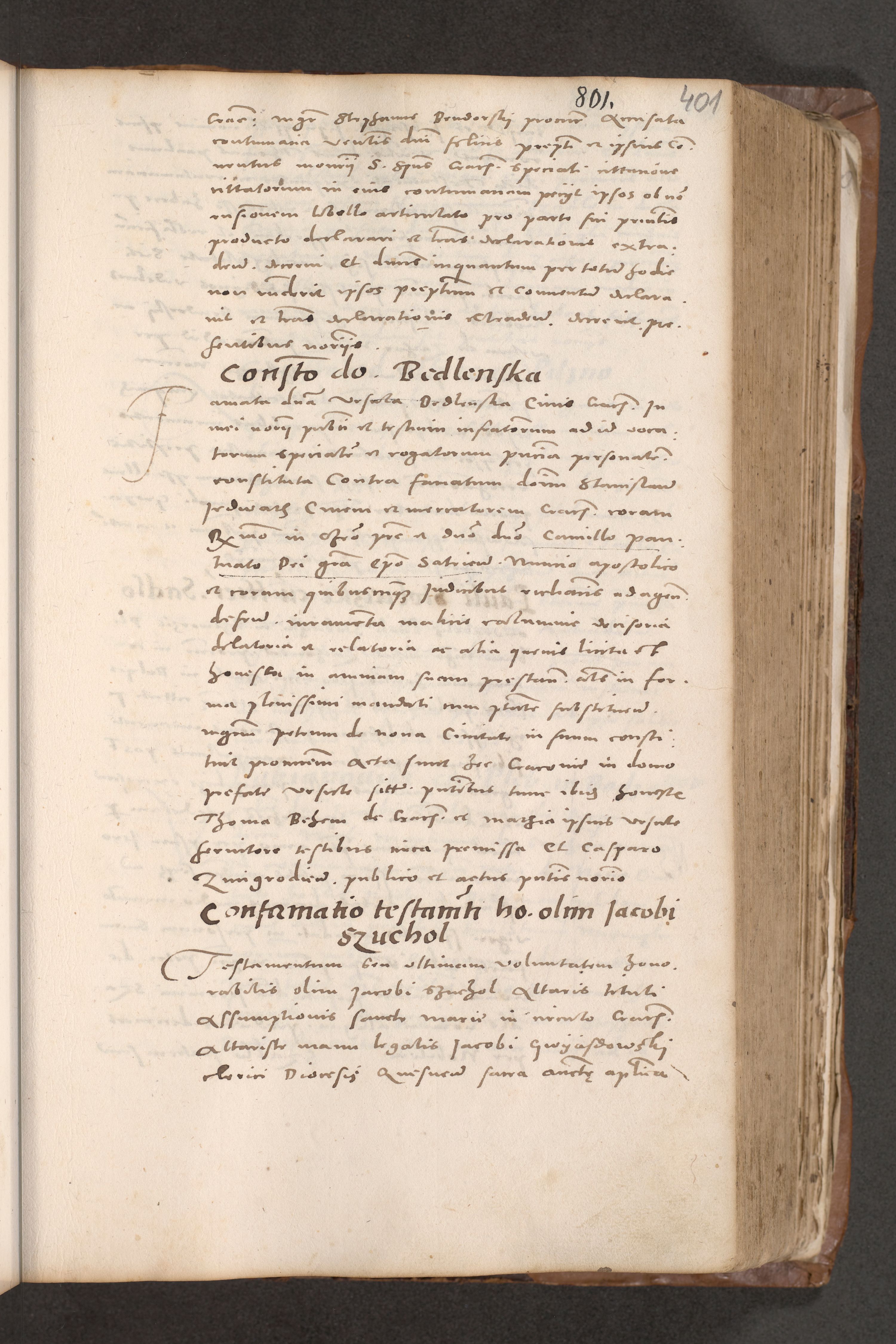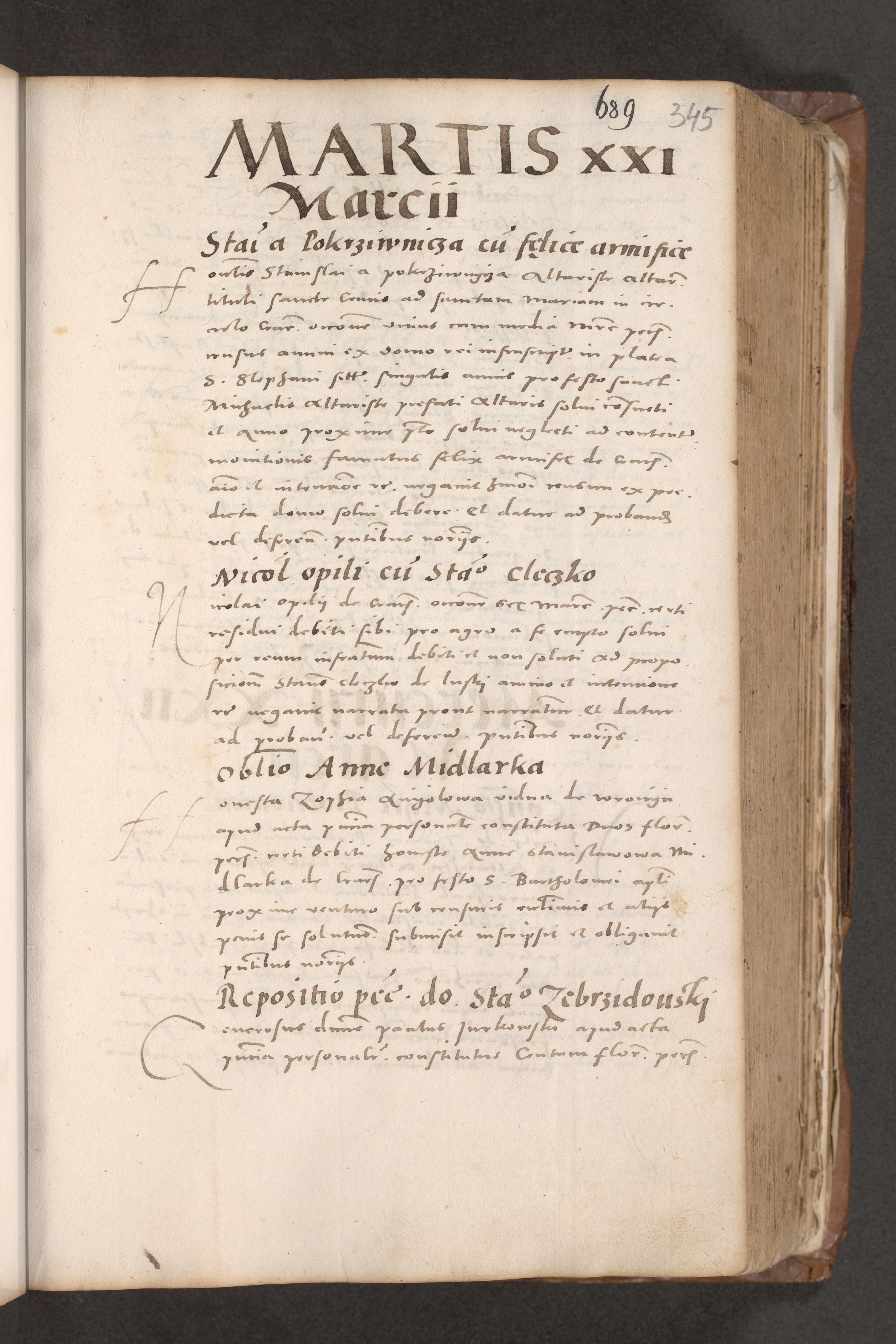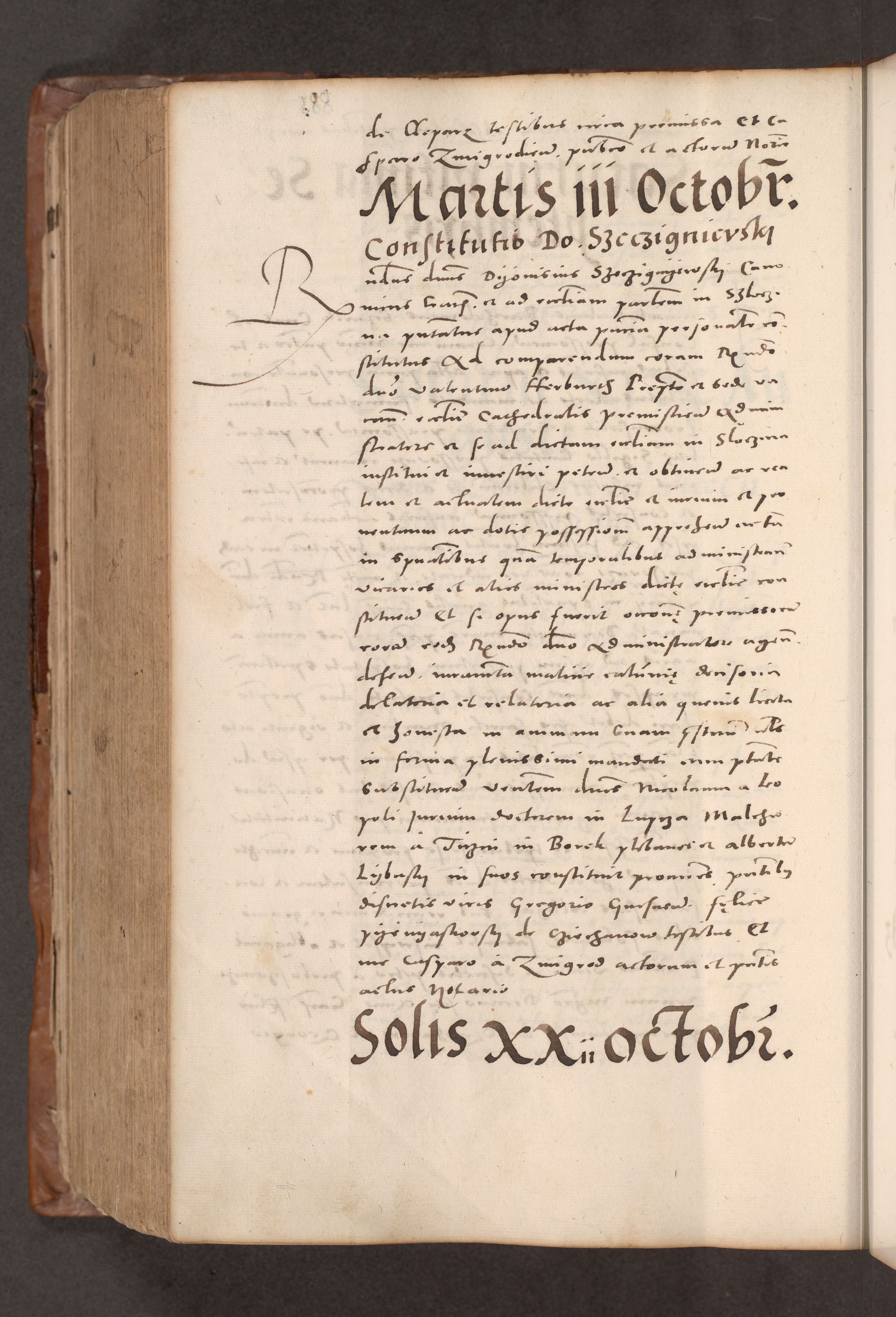 Acta actorum causarum, sententiarum tam diffinivarum quam interloquutoriarum, decretorum, obligationum, quietationum et constitutionum procuratorum coram reverendo domino Stanislao Szlomowski praeposito Calissieensi, archidiacono Sandecensi, canonico vicarioque in spiritualibus generali Cracoviensi ad annum Domini millesimum quingentesimum quinquagesimum octavum, cuius indicio prima, pontificatus sanctissimi domini nostri Pauli divina providencia pape quarti, anno illius tercio, feliciter sequuntur.