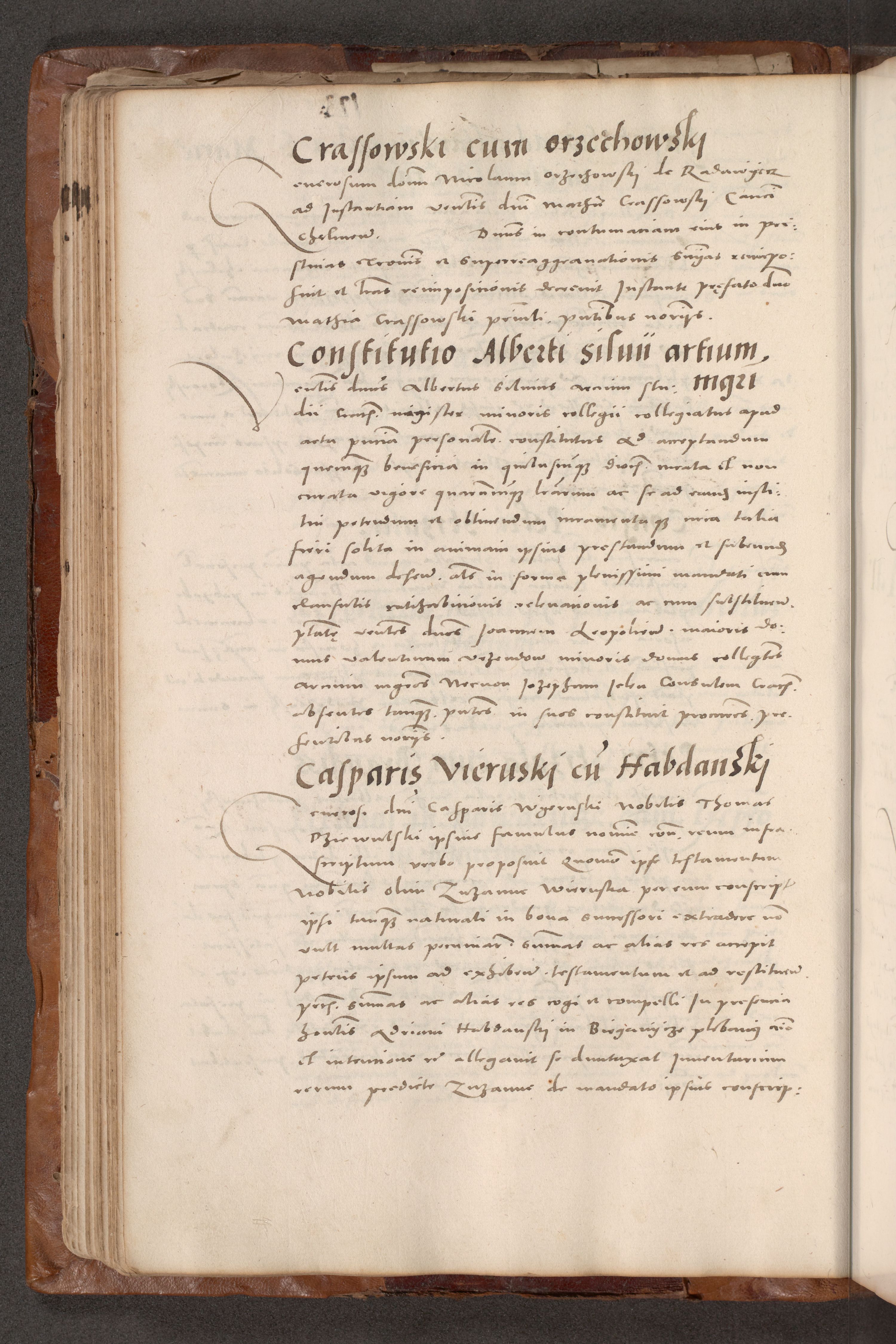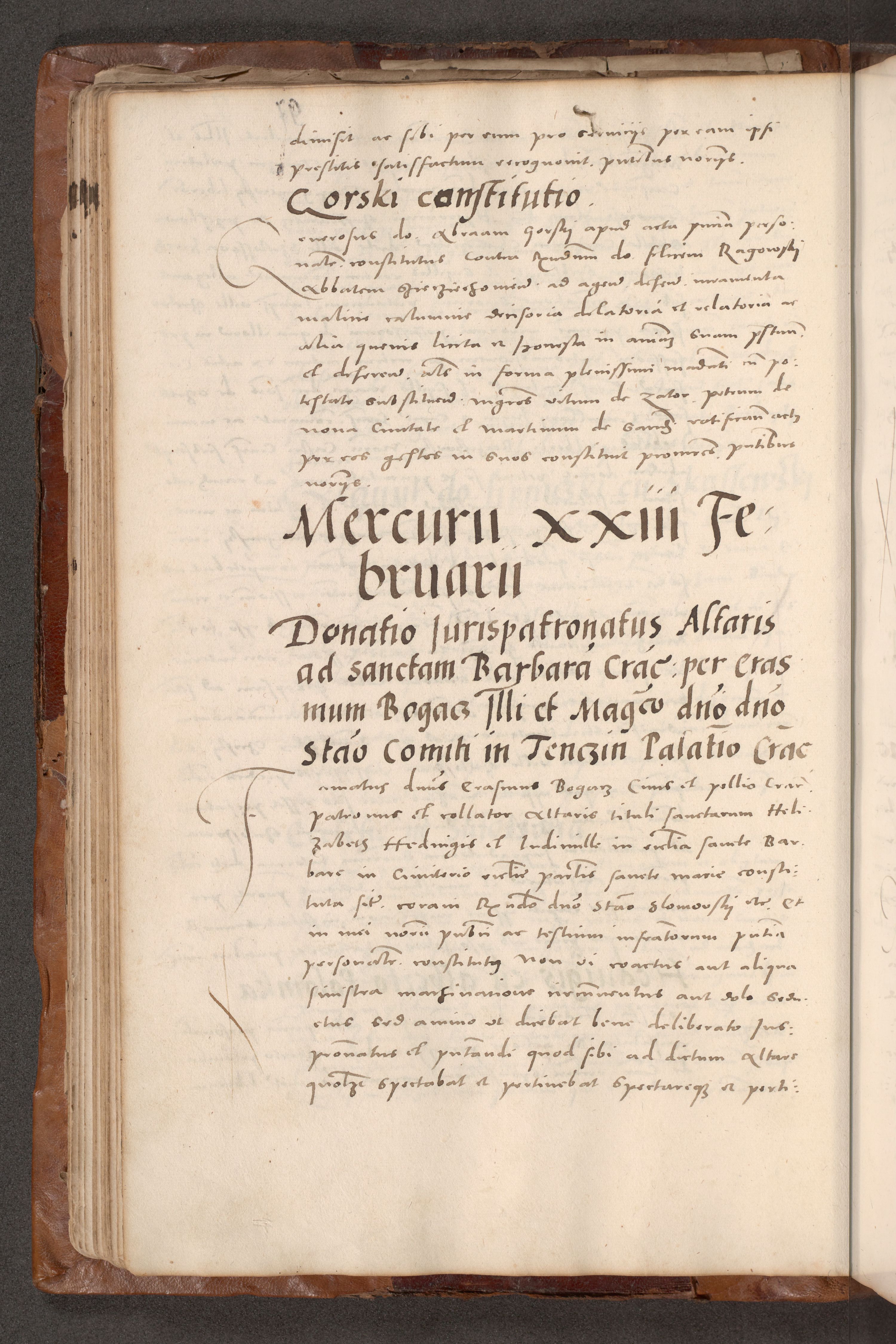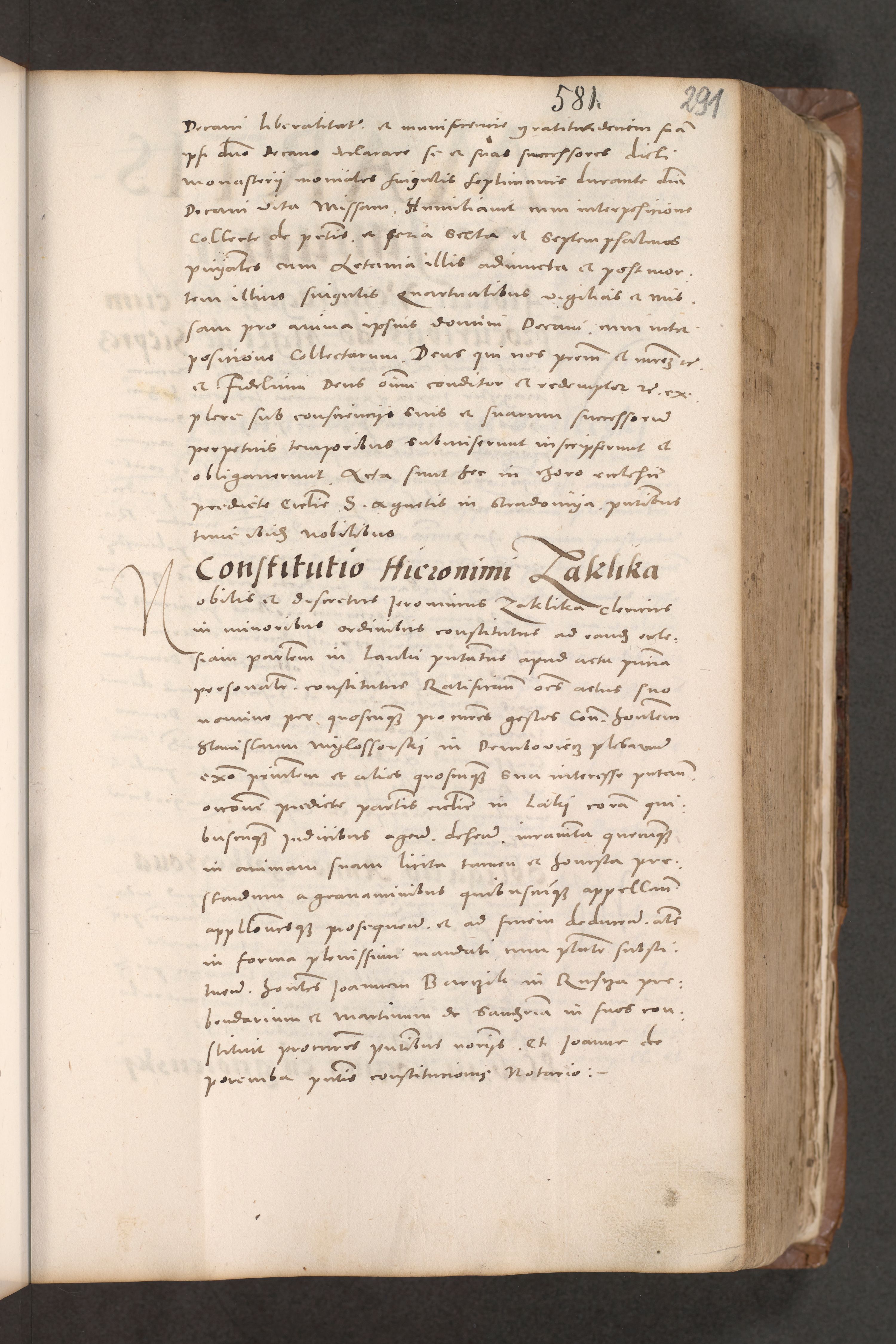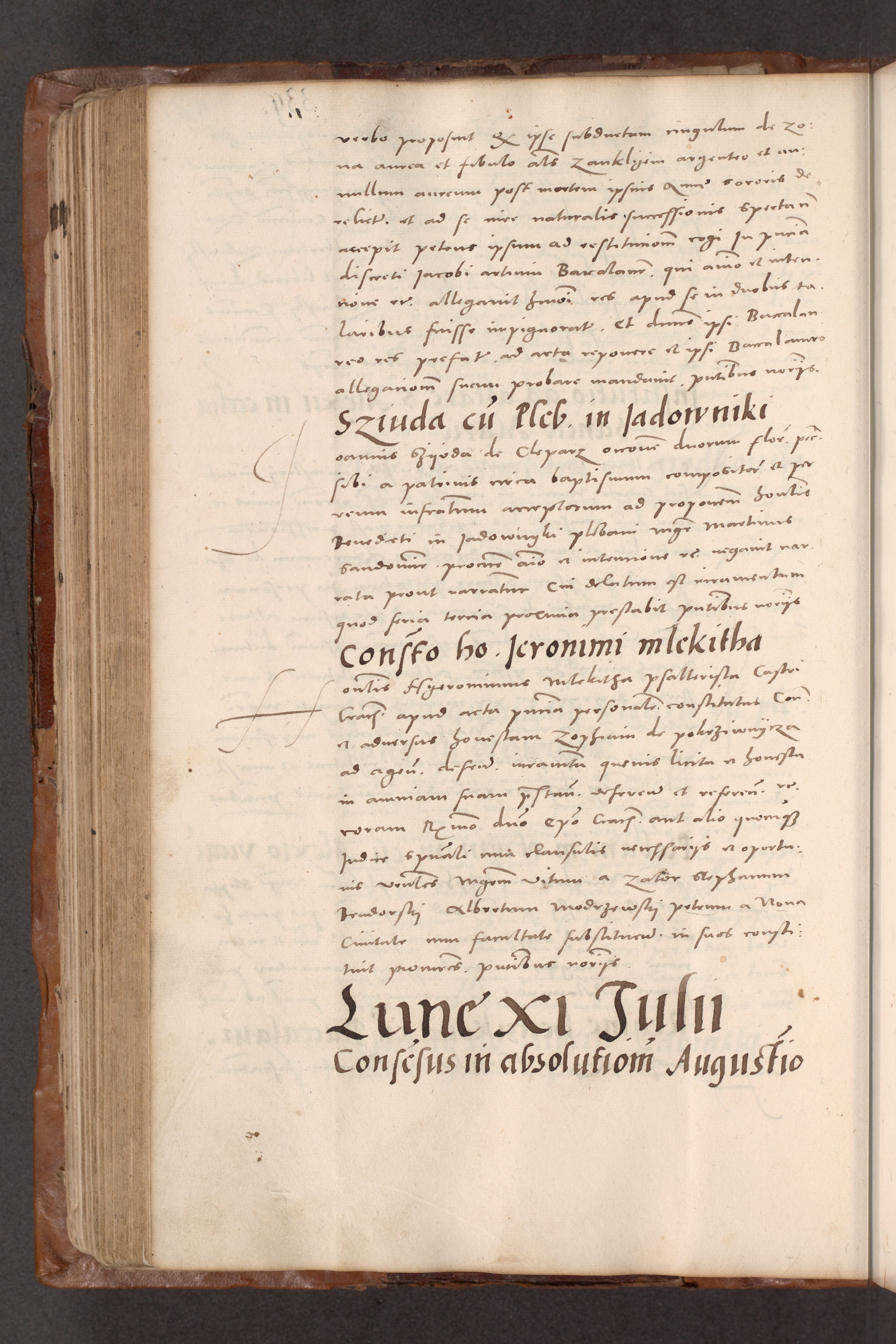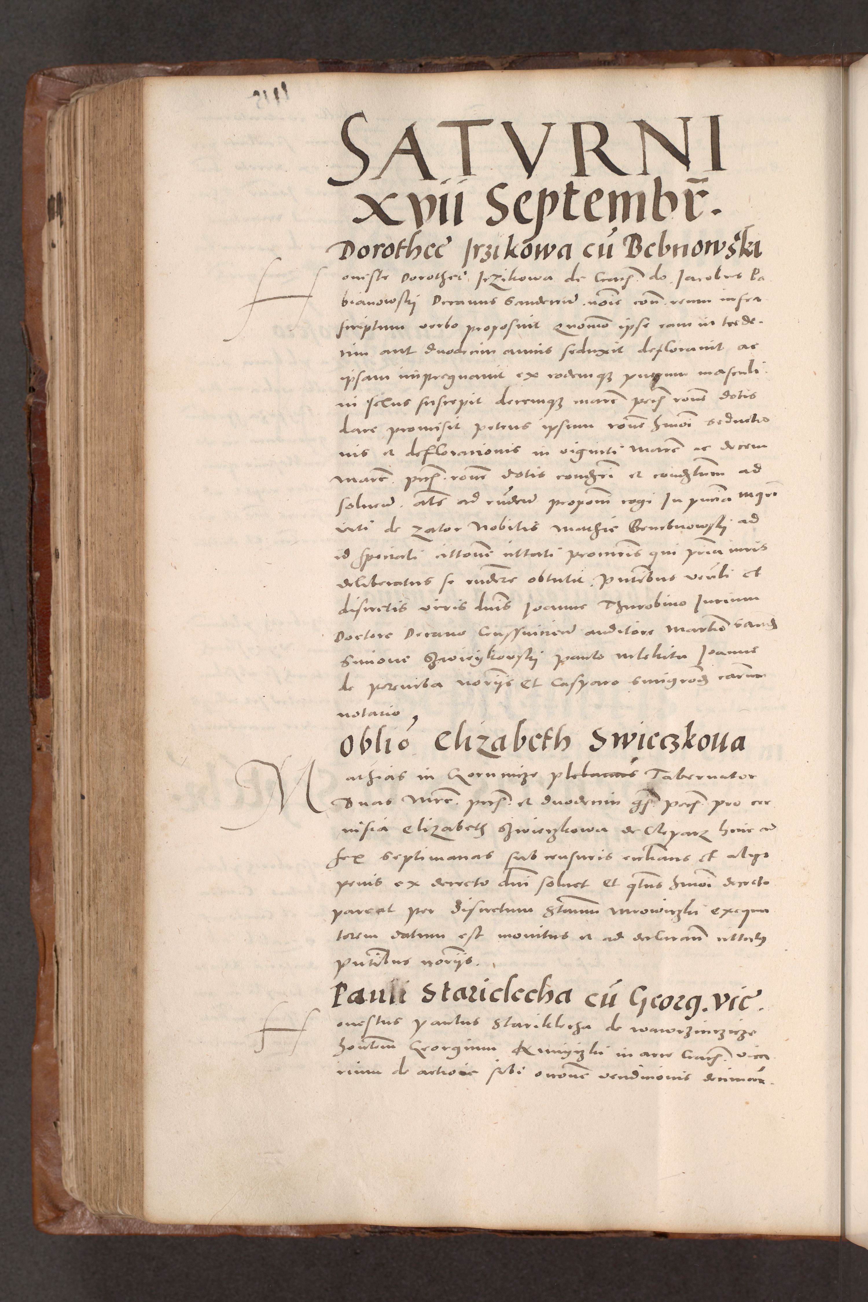 Acta actorum causarum, sententiarum tam diffinivarum quam interloquutoriarum, decretorum, obligationum, quietationum et constitutionum procuratorum coram reverendo domino Stanislao Szlomowski praeposito Calissieensi, archidiacono Sandecensi, canonico vicarioque in spiritualibus generali Cracoviensi ad annum Domini millesimum quingentesimum quinquagesimum octavum, cuius indicio prima, pontificatus sanctissimi domini nostri Pauli divina providencia pape quarti, anno illius tercio, feliciter sequuntur.