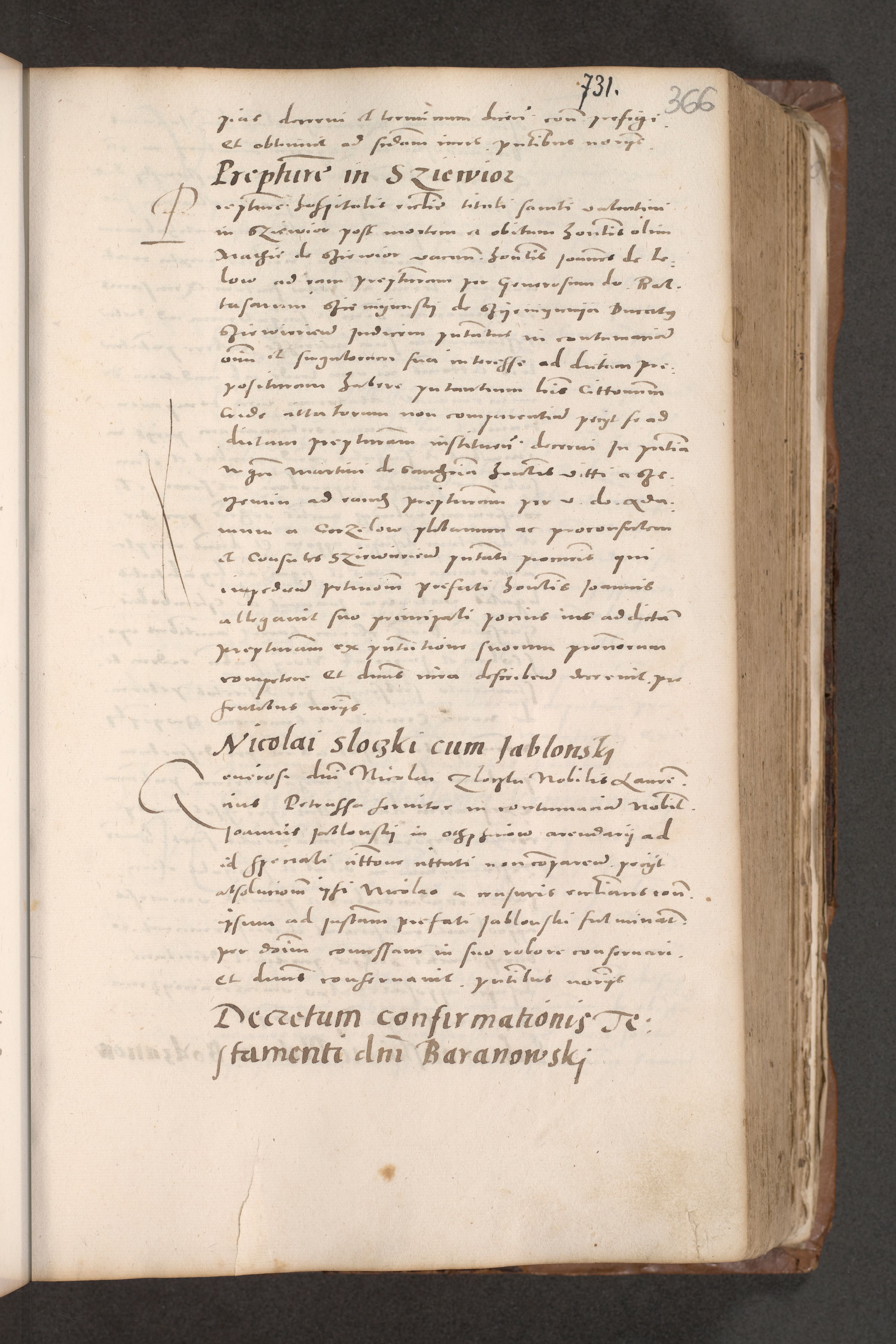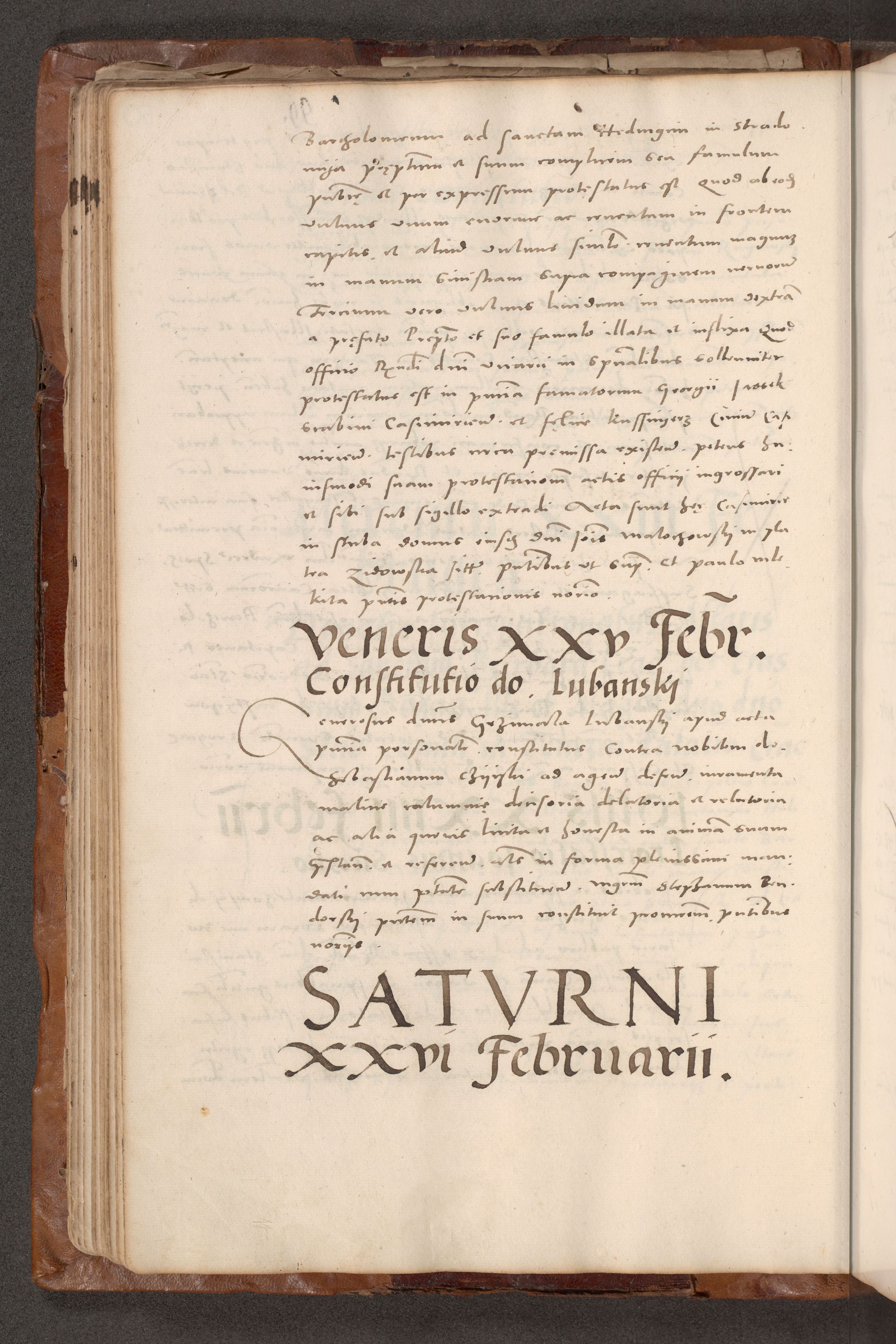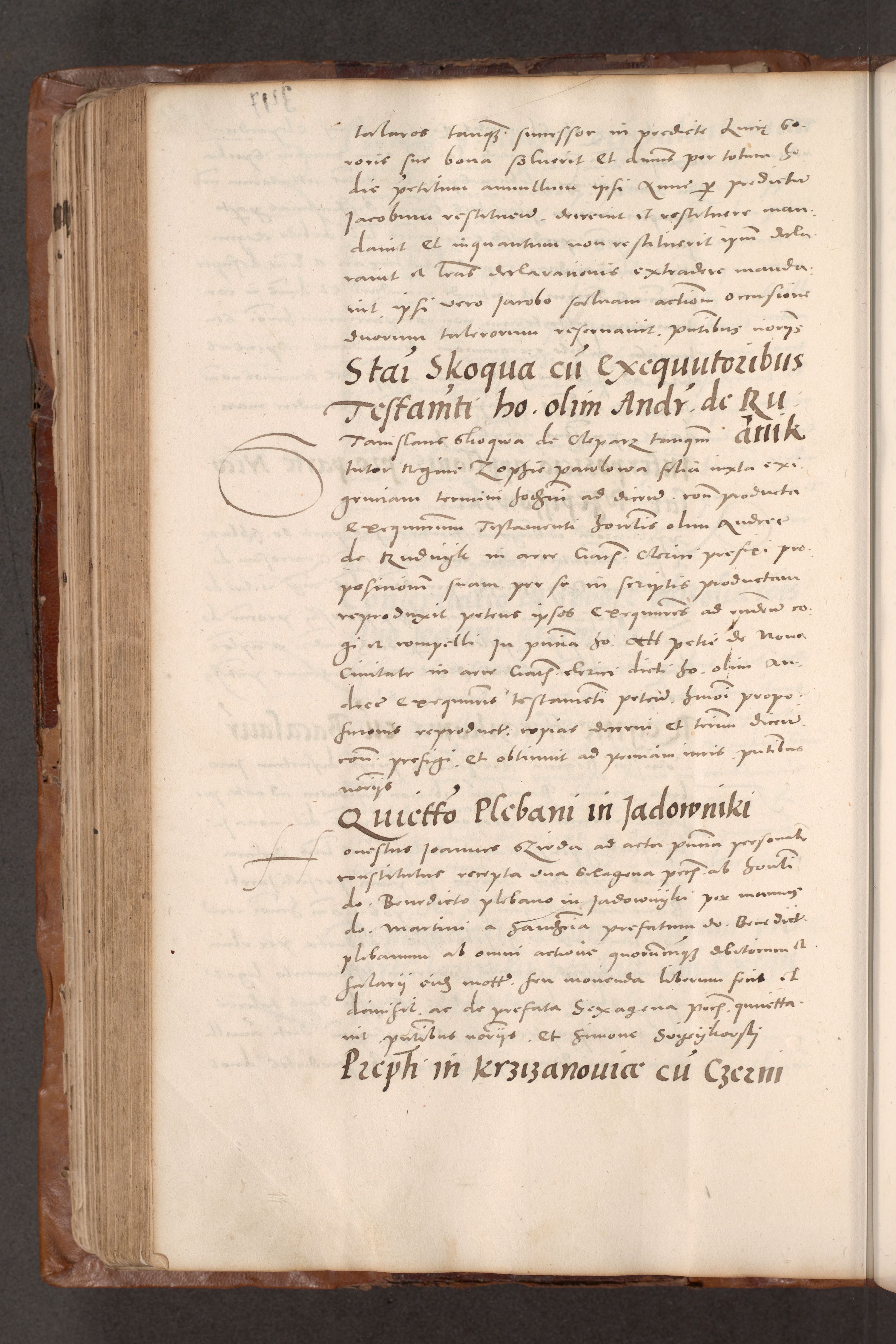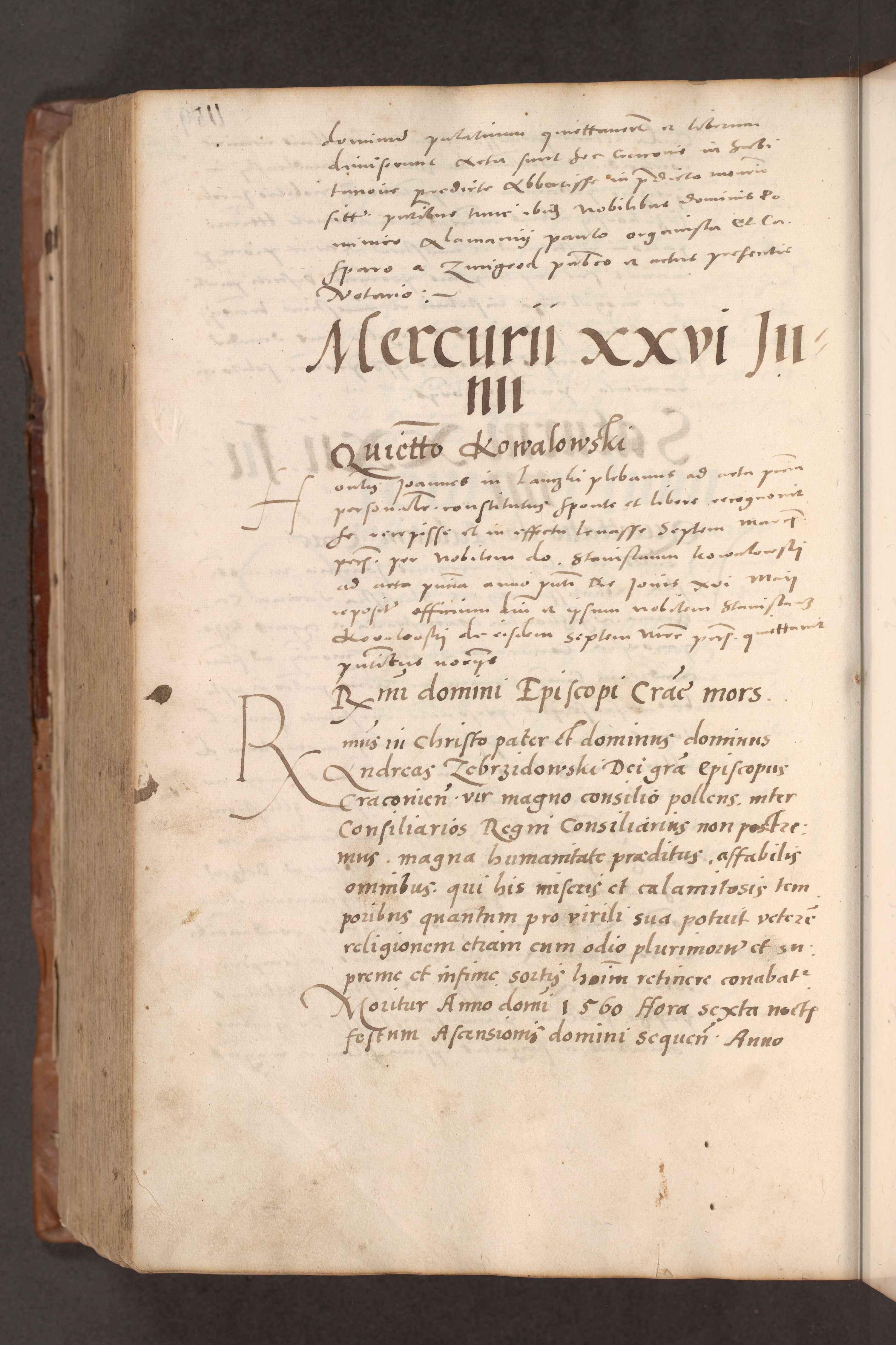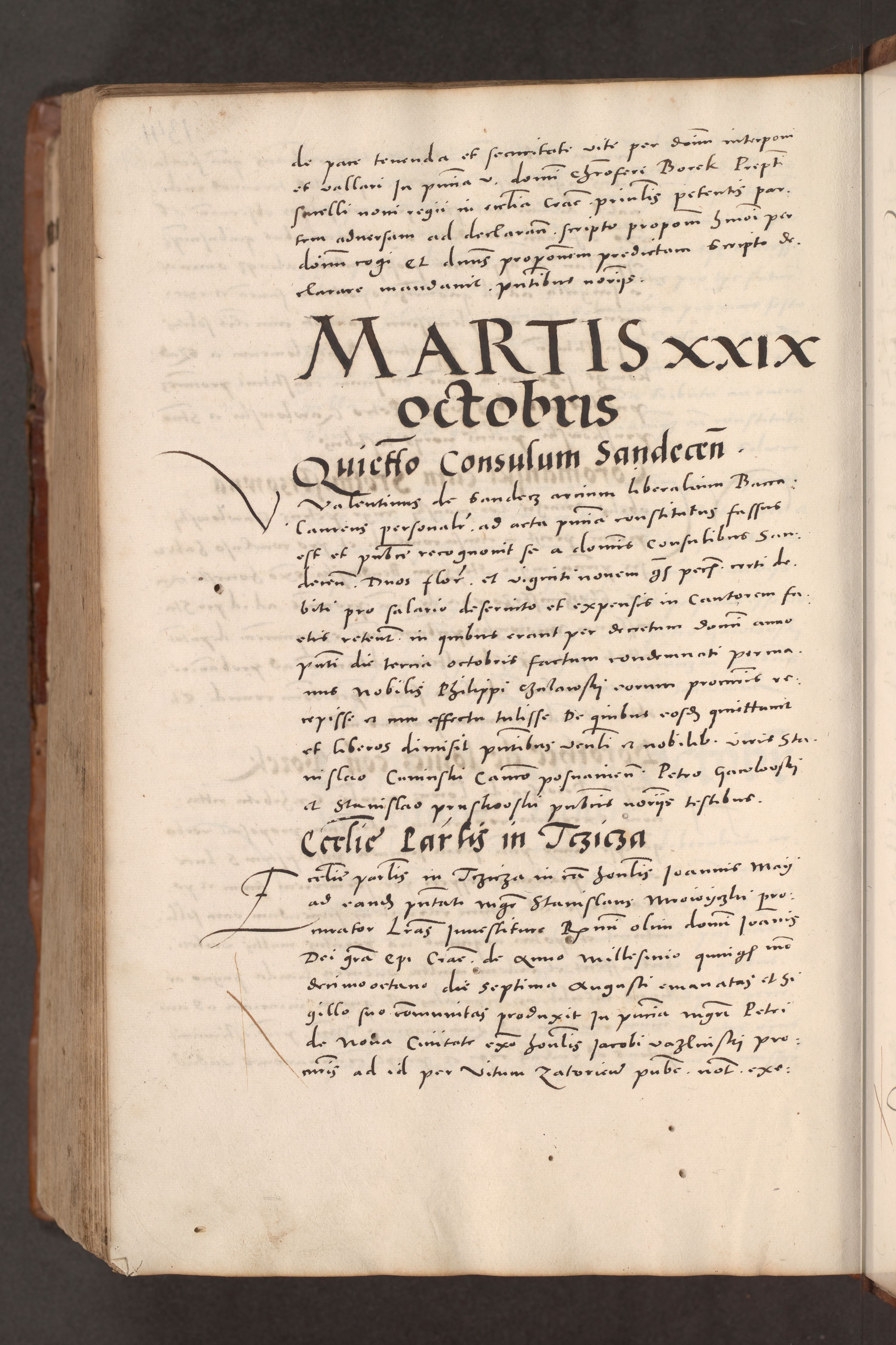 Acta actorum causarum, sententiarum tam diffinivarum quam interloquutoriarum, decretorum, obligationum, quietationum et constitutionum procuratorum coram reverendo domino Stanislao Szlomowski praeposito Calissieensi, archidiacono Sandecensi, canonico vicarioque in spiritualibus generali Cracoviensi ad annum Domini millesimum quingentesimum quinquagesimum octavum, cuius indicio prima, pontificatus sanctissimi domini nostri Pauli divina providencia pape quarti, anno illius tercio, feliciter sequuntur.