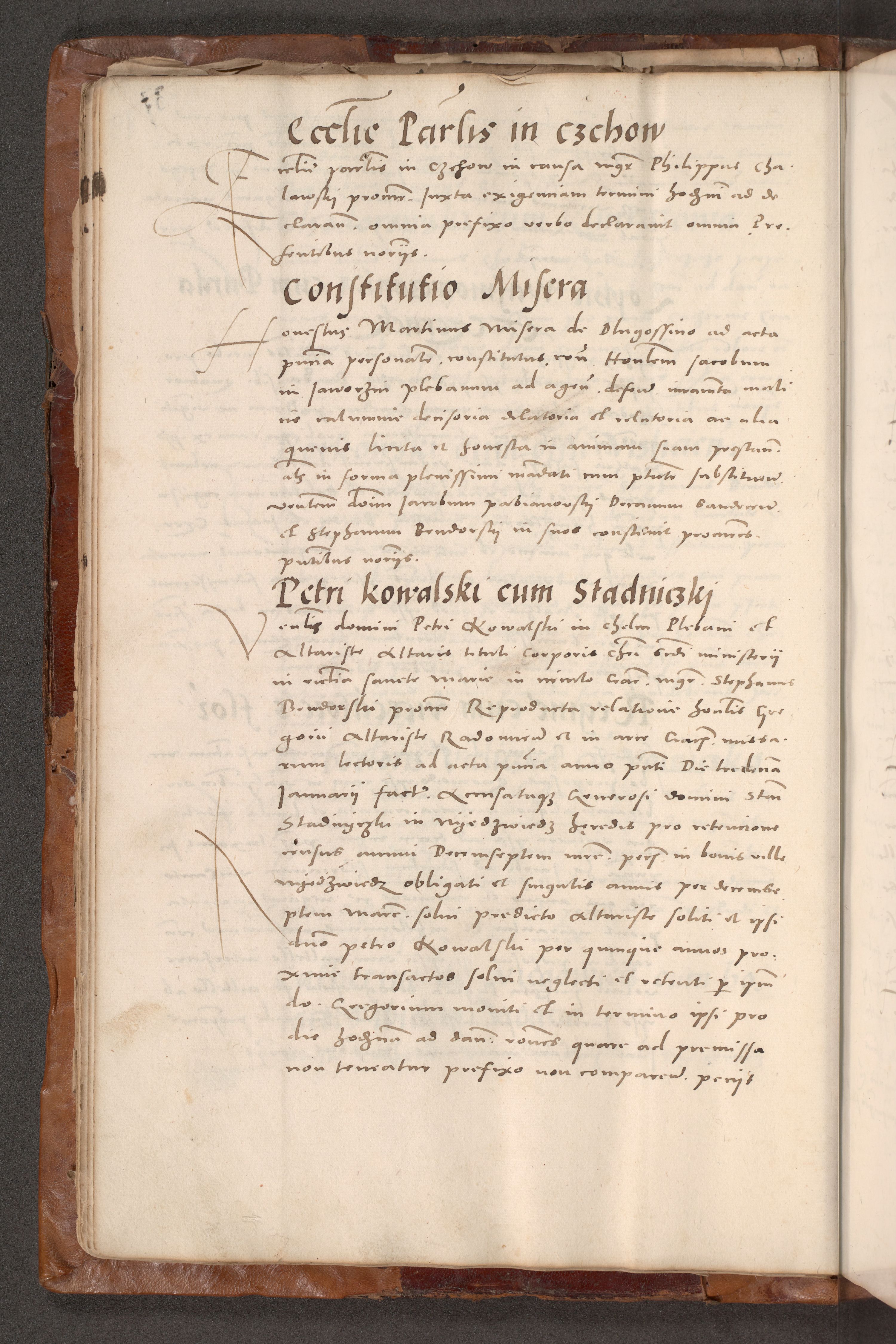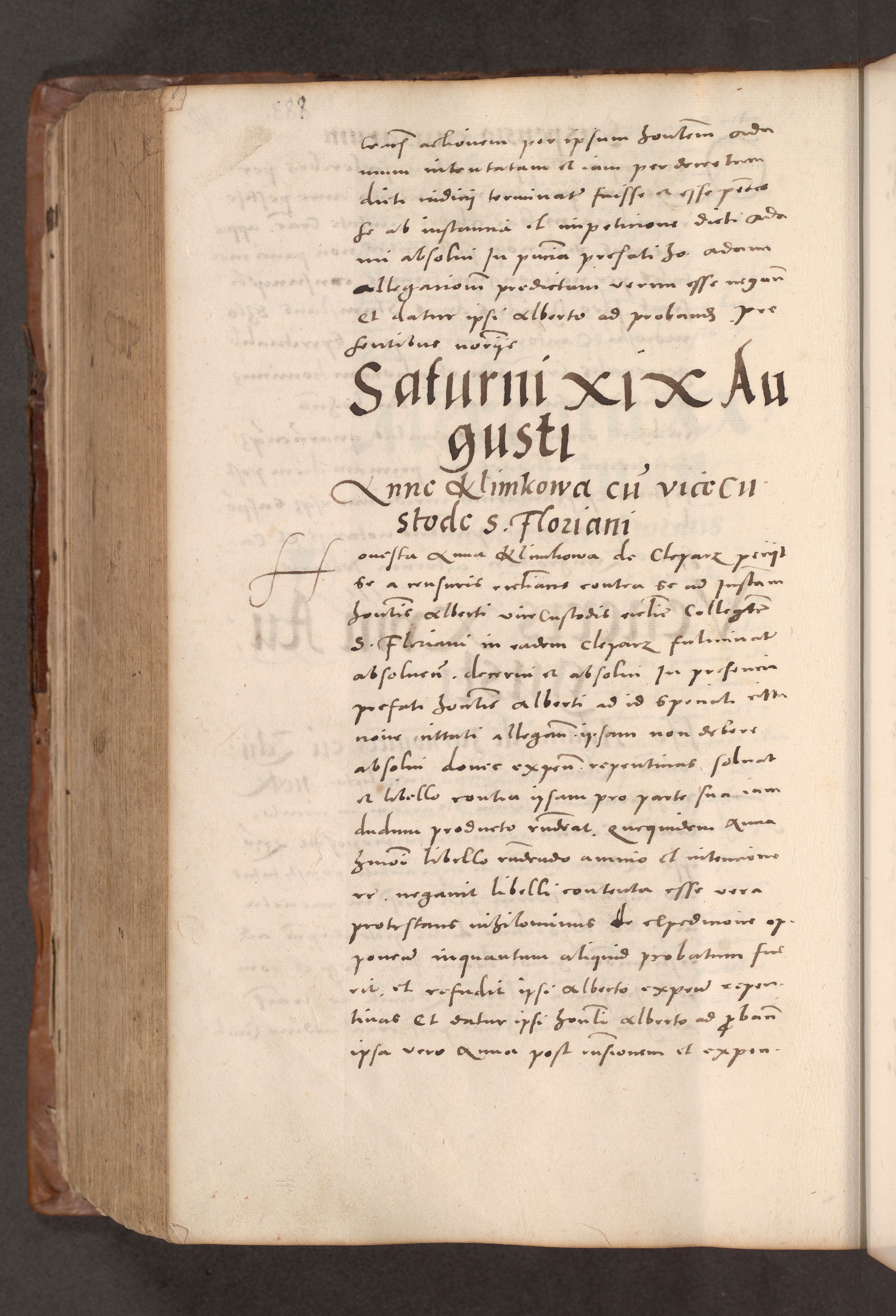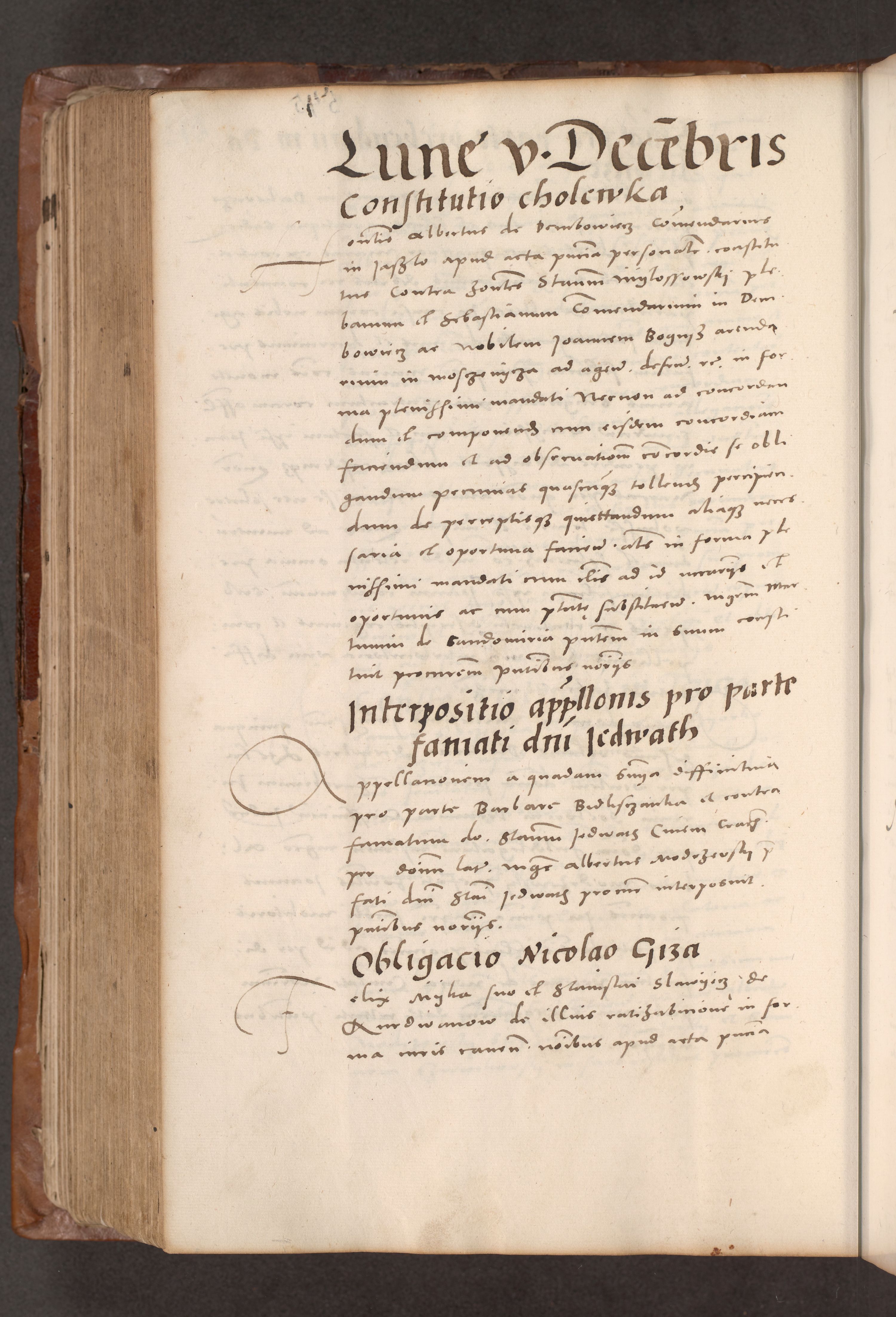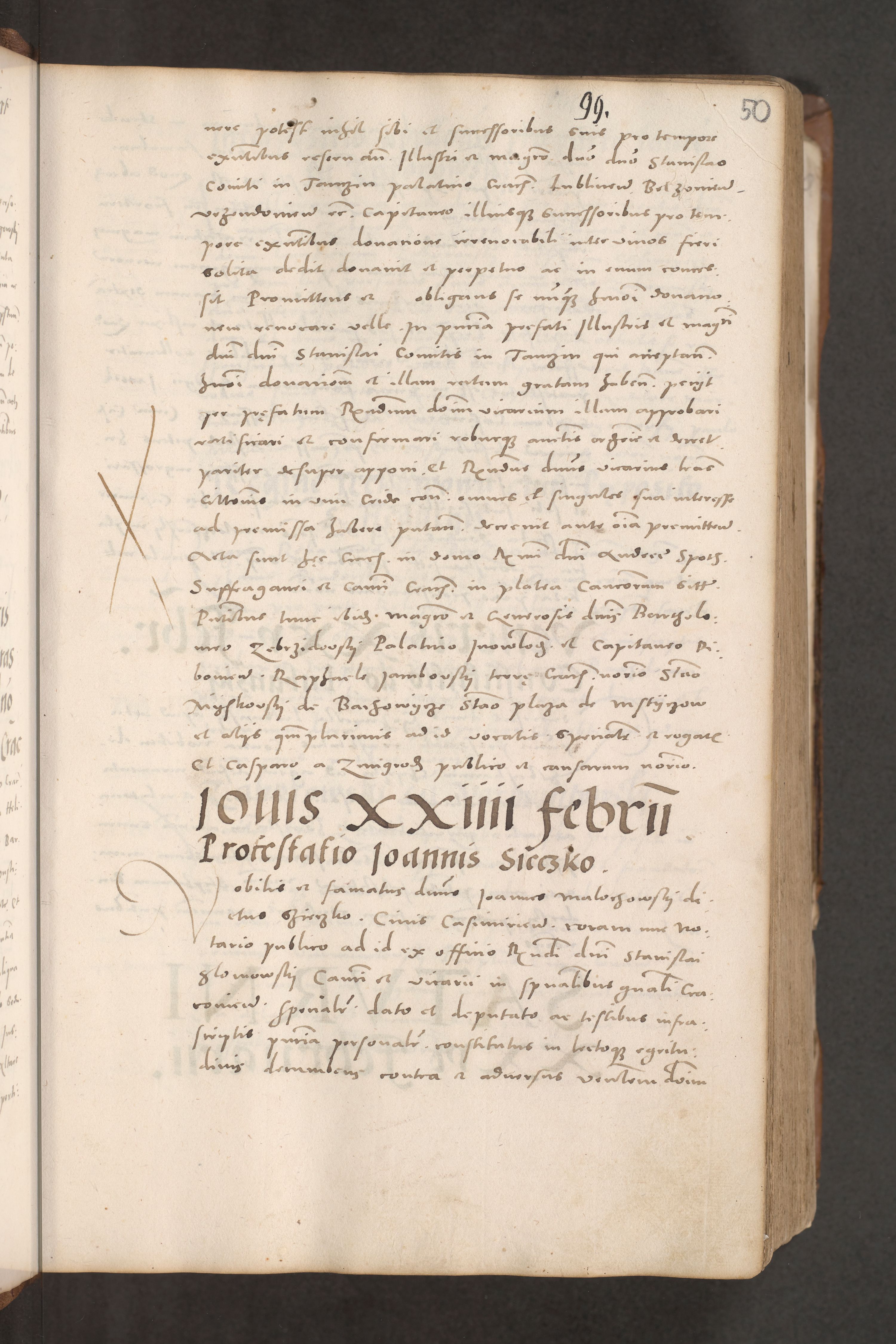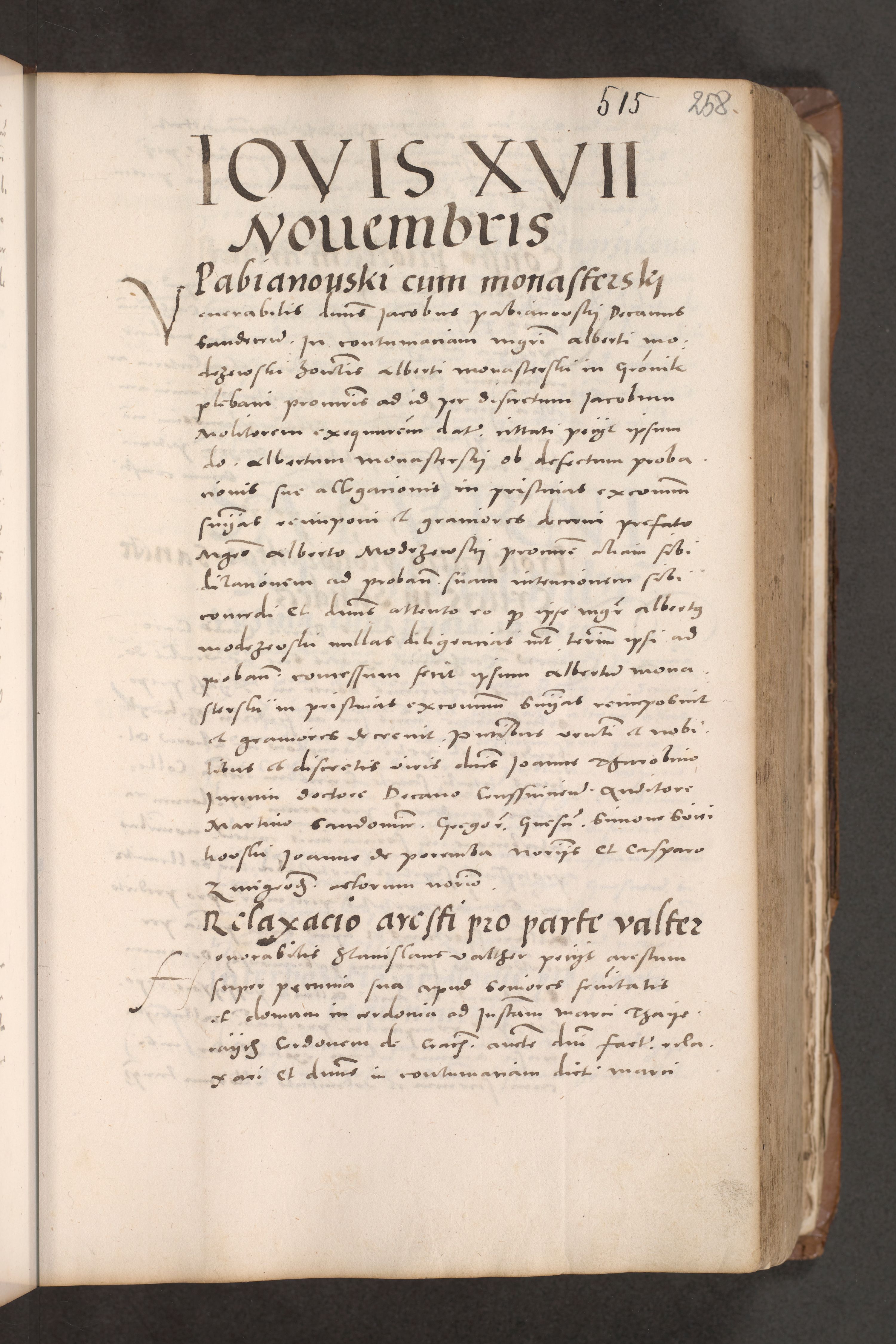 Acta actorum causarum, sententiarum tam diffinivarum quam interloquutoriarum, decretorum, obligationum, quietationum et constitutionum procuratorum coram reverendo domino Stanislao Szlomowski praeposito Calissieensi, archidiacono Sandecensi, canonico vicarioque in spiritualibus generali Cracoviensi ad annum Domini millesimum quingentesimum quinquagesimum octavum, cuius indicio prima, pontificatus sanctissimi domini nostri Pauli divina providencia pape quarti, anno illius tercio, feliciter sequuntur.