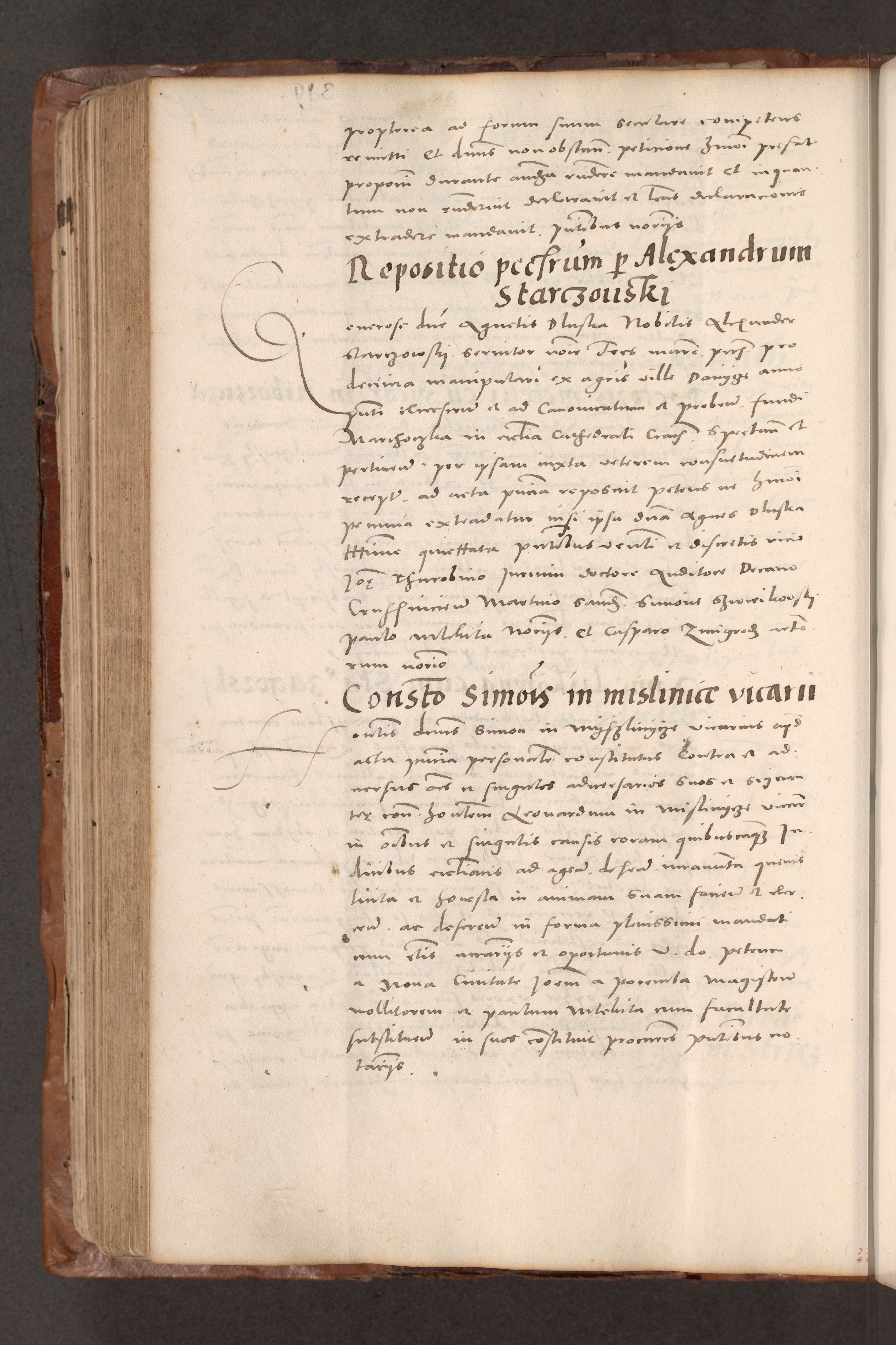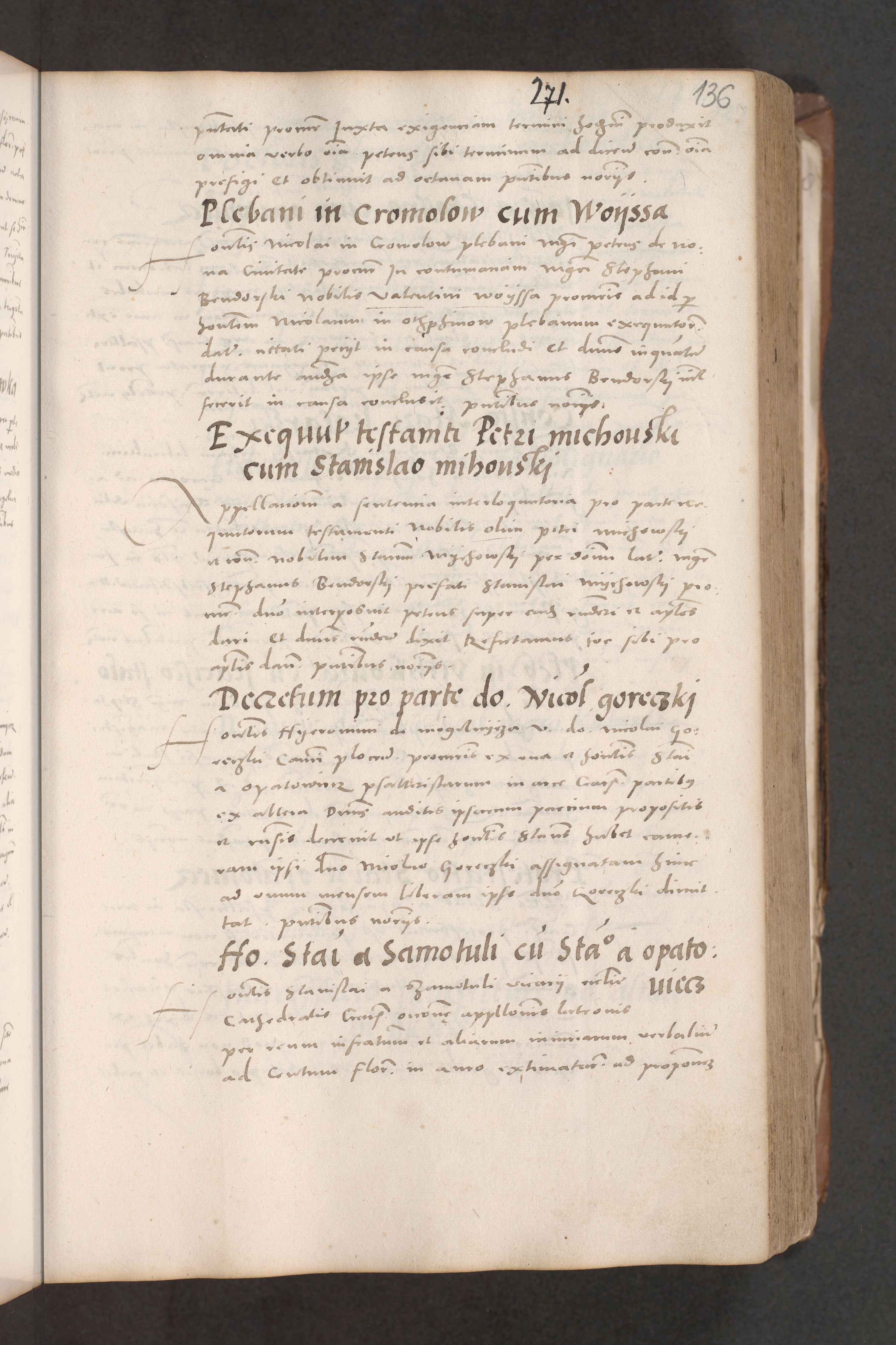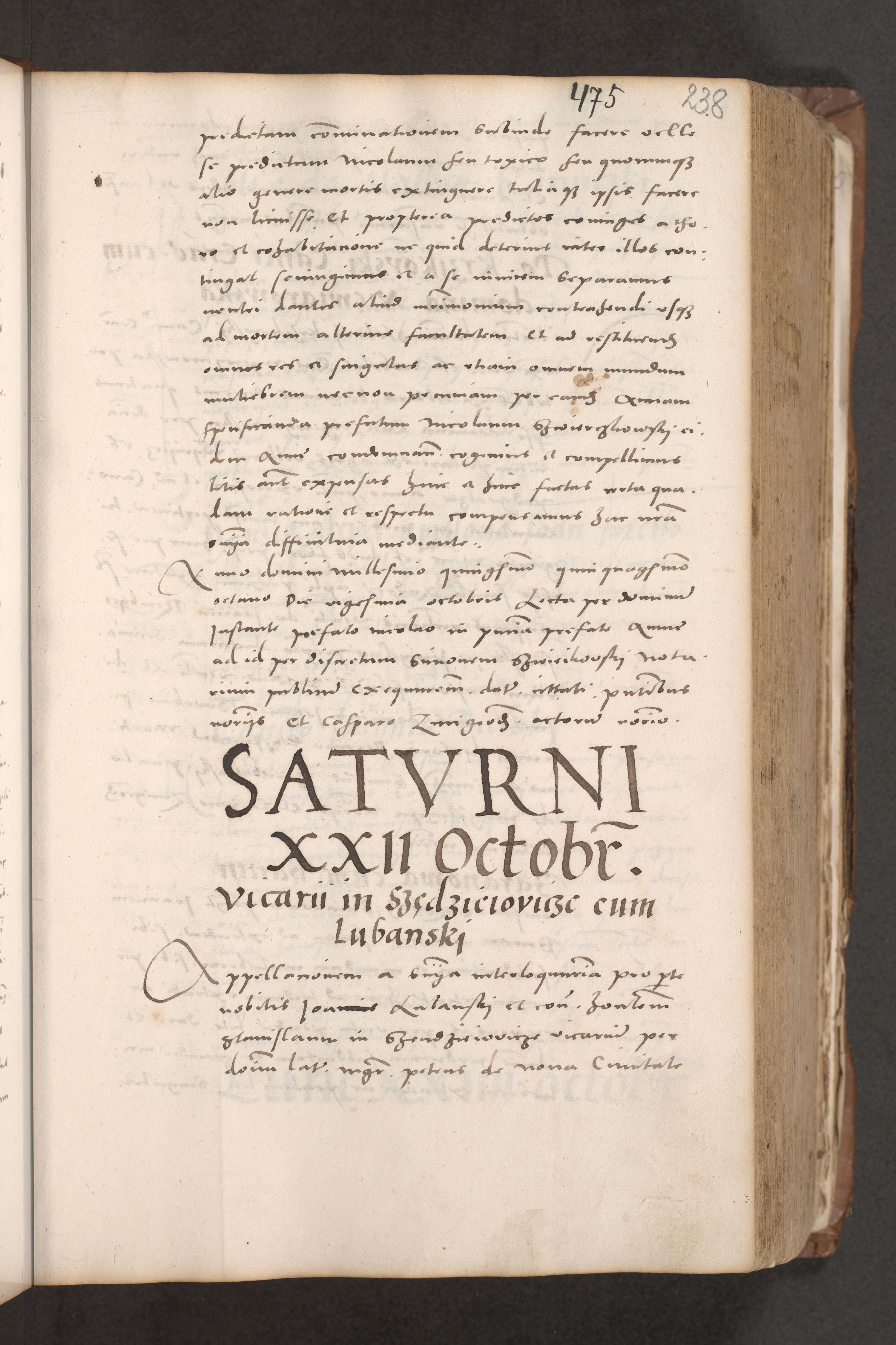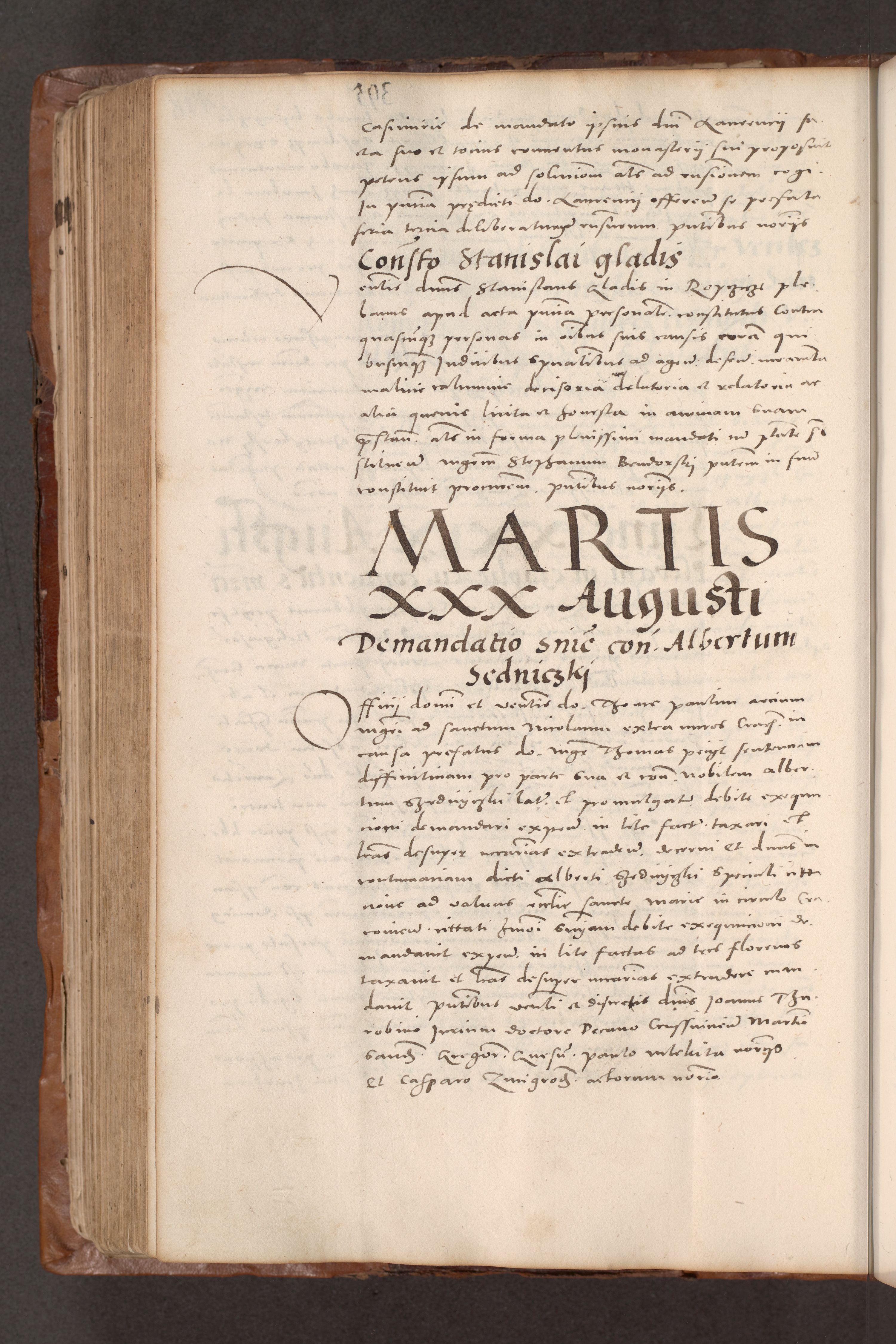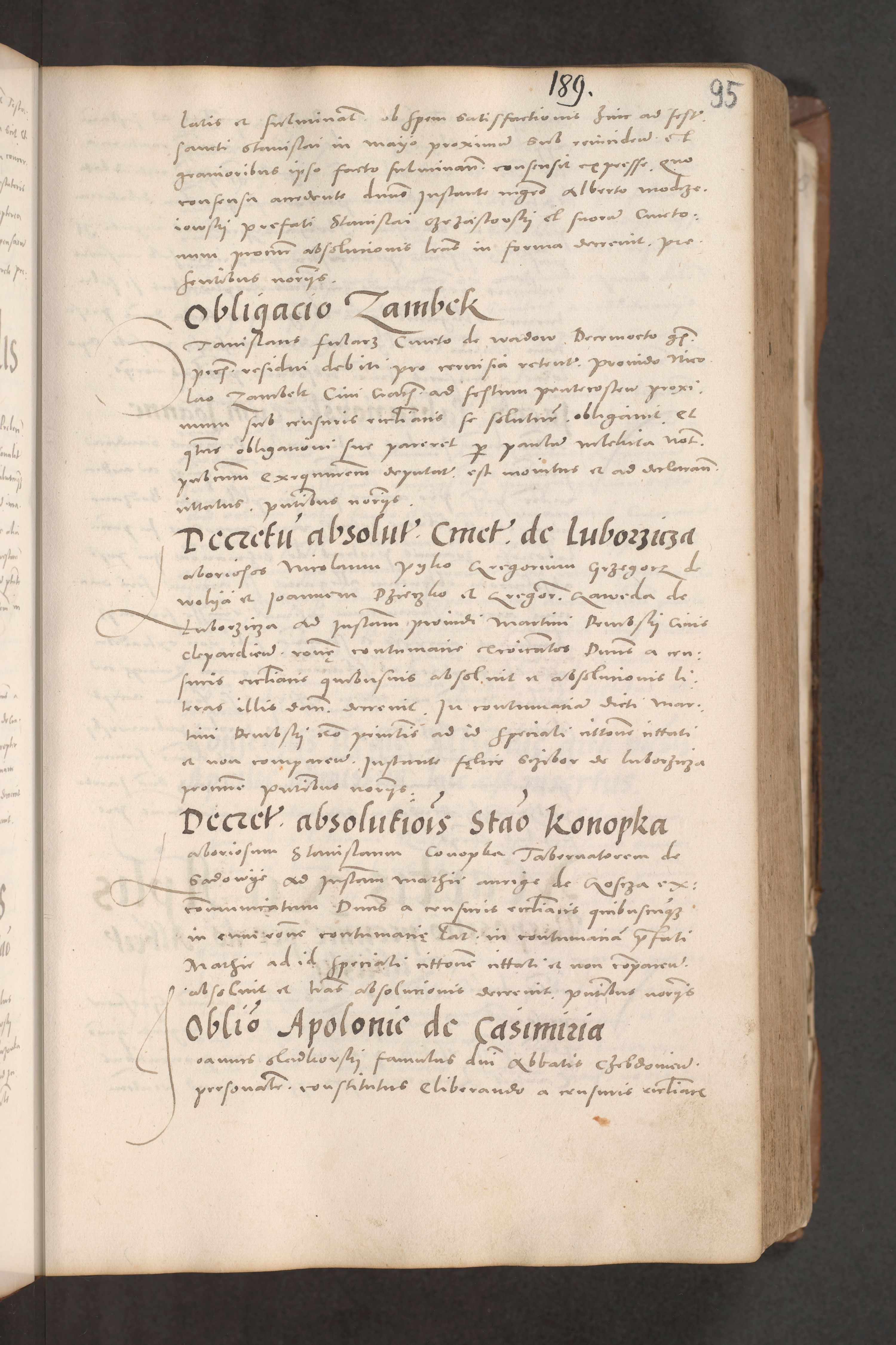 Acta actorum causarum, sententiarum tam diffinivarum quam interloquutoriarum, decretorum, obligationum, quietationum et constitutionum procuratorum coram reverendo domino Stanislao Szlomowski praeposito Calissieensi, archidiacono Sandecensi, canonico vicarioque in spiritualibus generali Cracoviensi ad annum Domini millesimum quingentesimum quinquagesimum octavum, cuius indicio prima, pontificatus sanctissimi domini nostri Pauli divina providencia pape quarti, anno illius tercio, feliciter sequuntur.