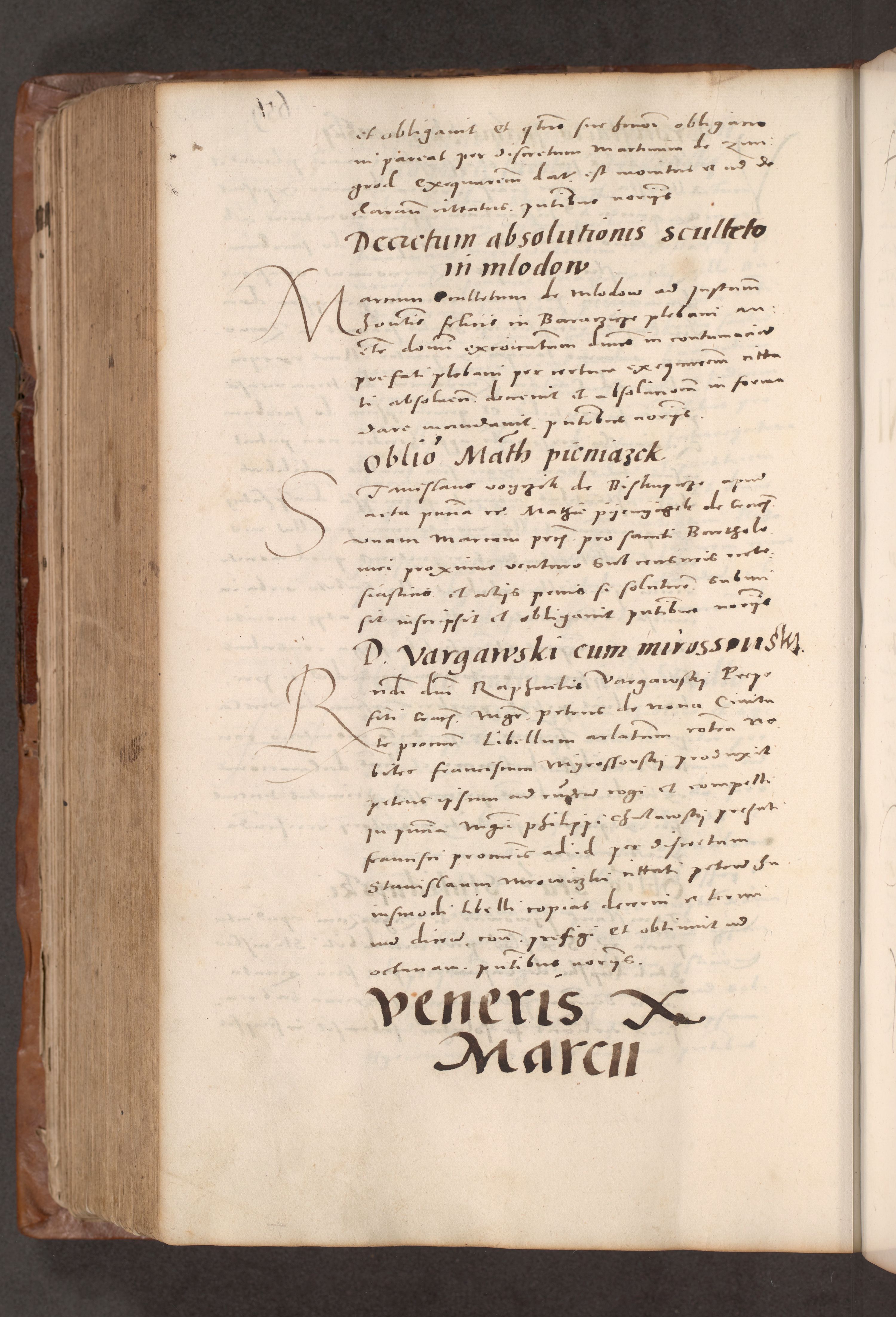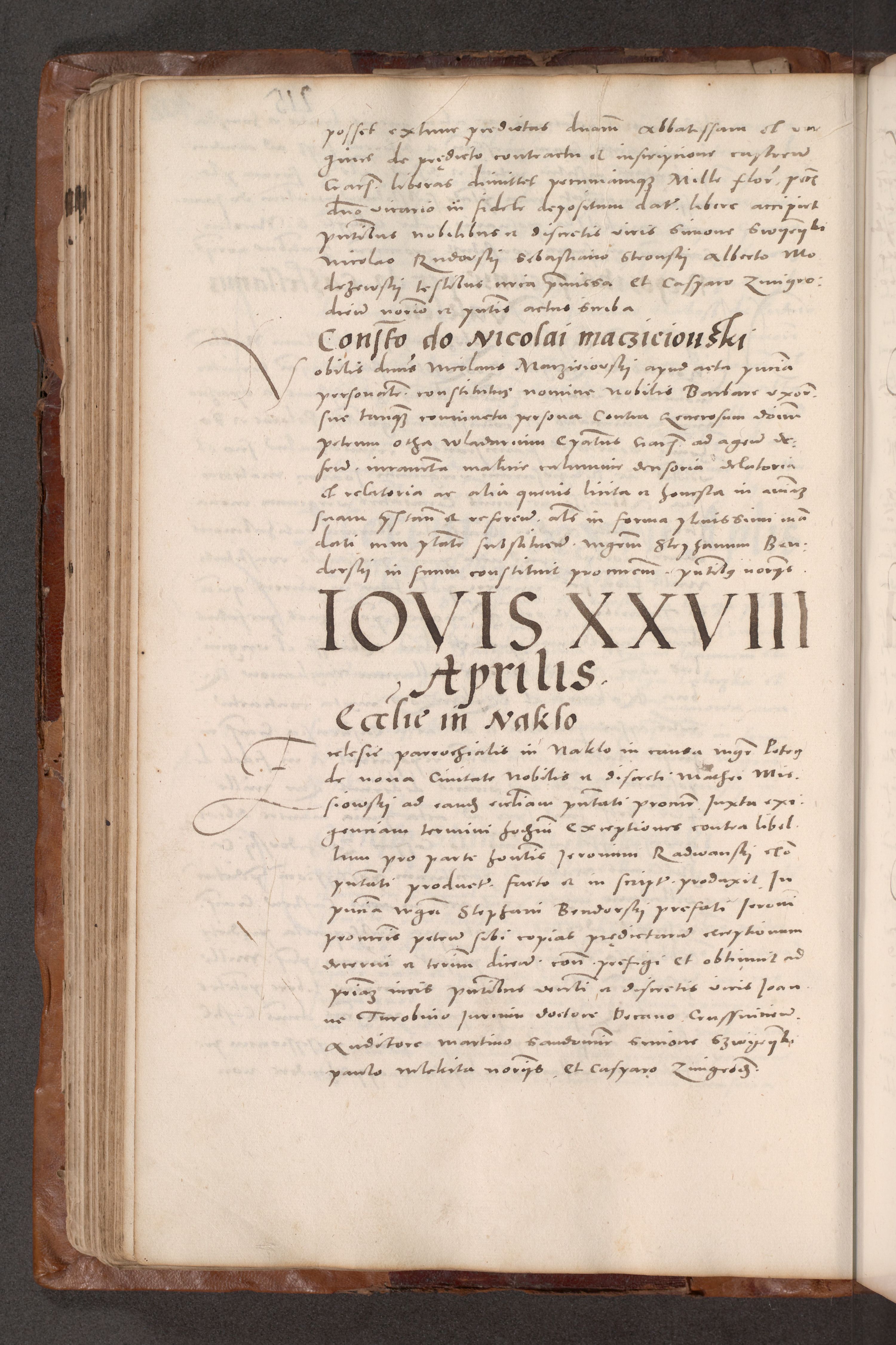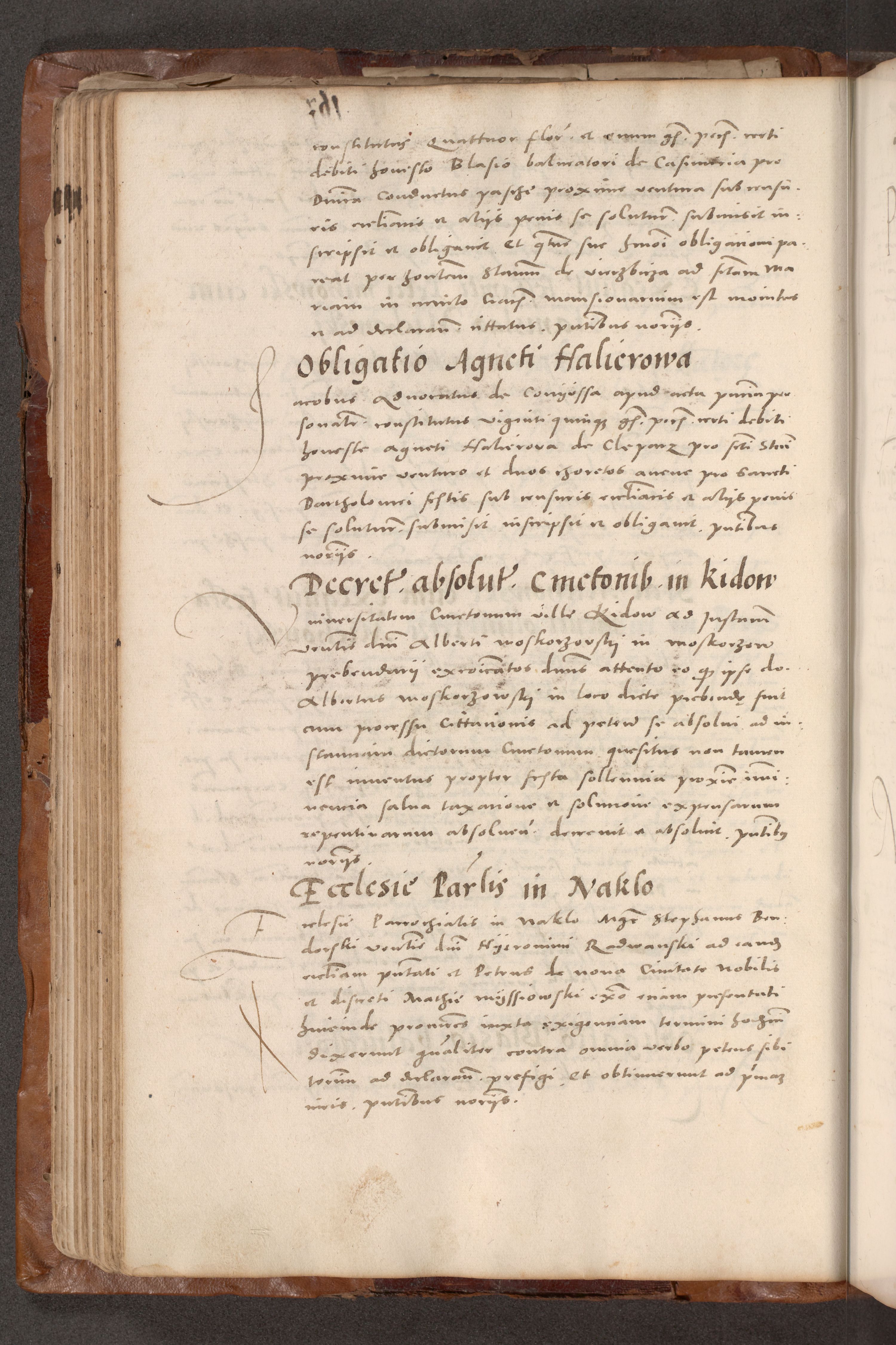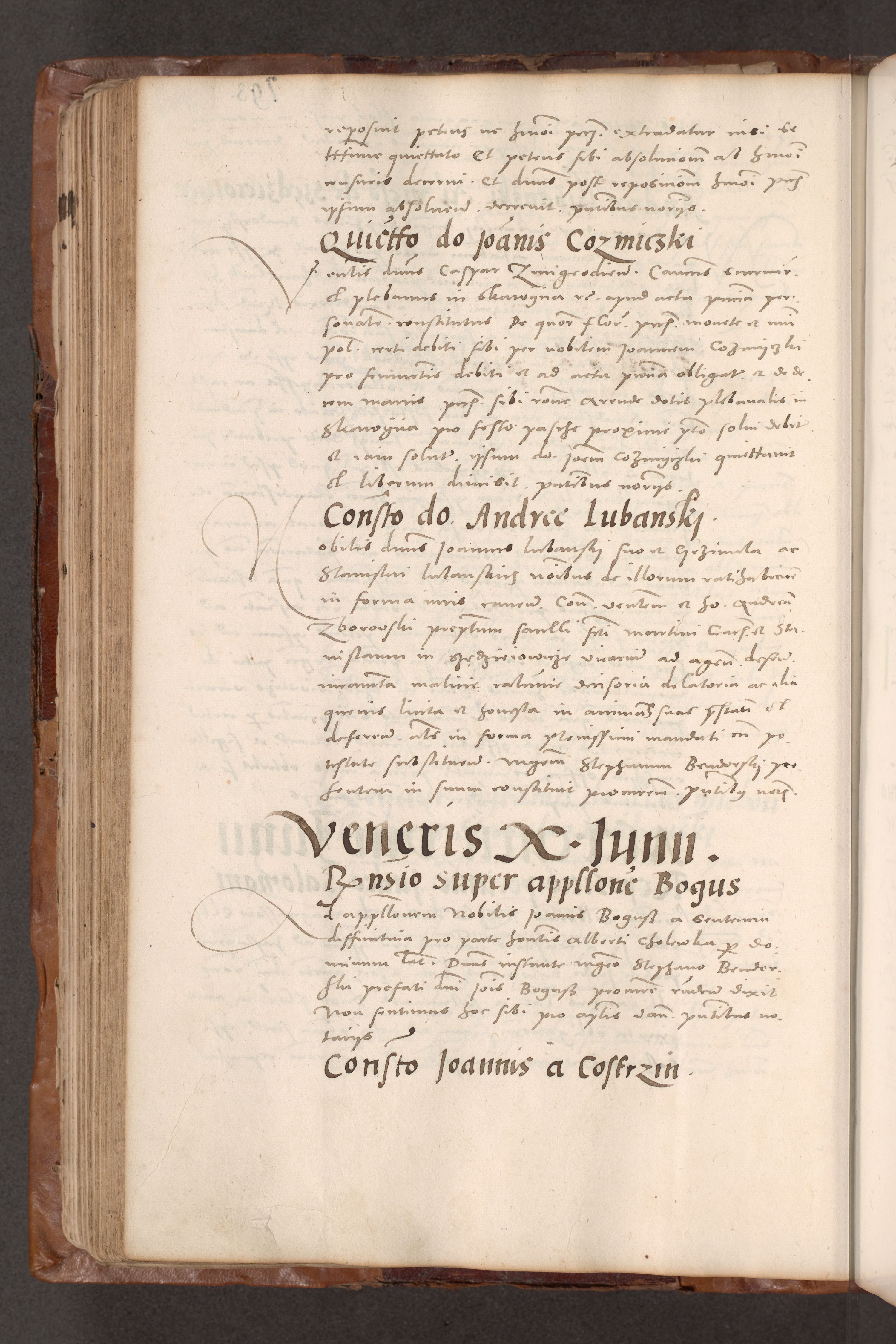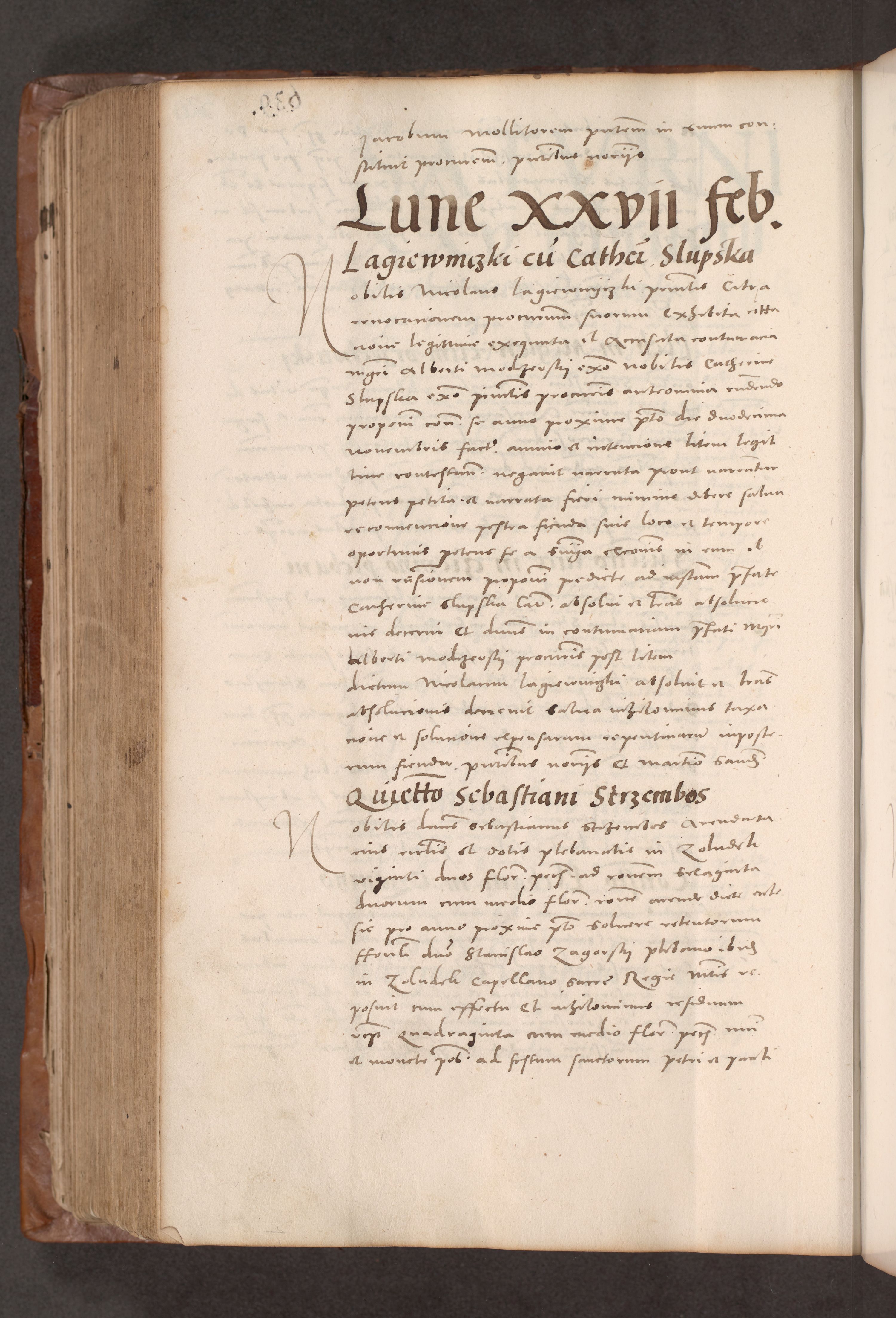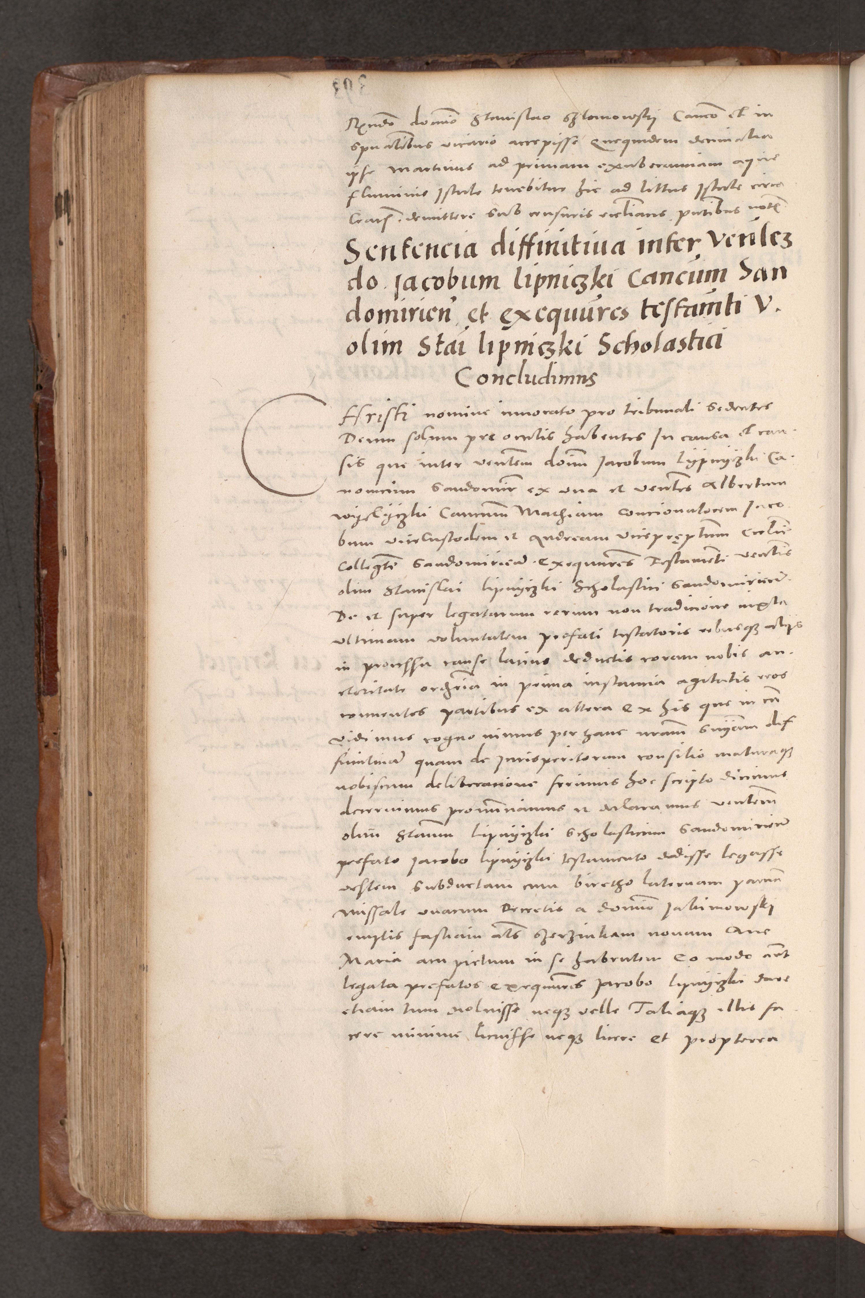 Acta actorum causarum, sententiarum tam diffinivarum quam interloquutoriarum, decretorum, obligationum, quietationum et constitutionum procuratorum coram reverendo domino Stanislao Szlomowski praeposito Calissieensi, archidiacono Sandecensi, canonico vicarioque in spiritualibus generali Cracoviensi ad annum Domini millesimum quingentesimum quinquagesimum octavum, cuius indicio prima, pontificatus sanctissimi domini nostri Pauli divina providencia pape quarti, anno illius tercio, feliciter sequuntur.