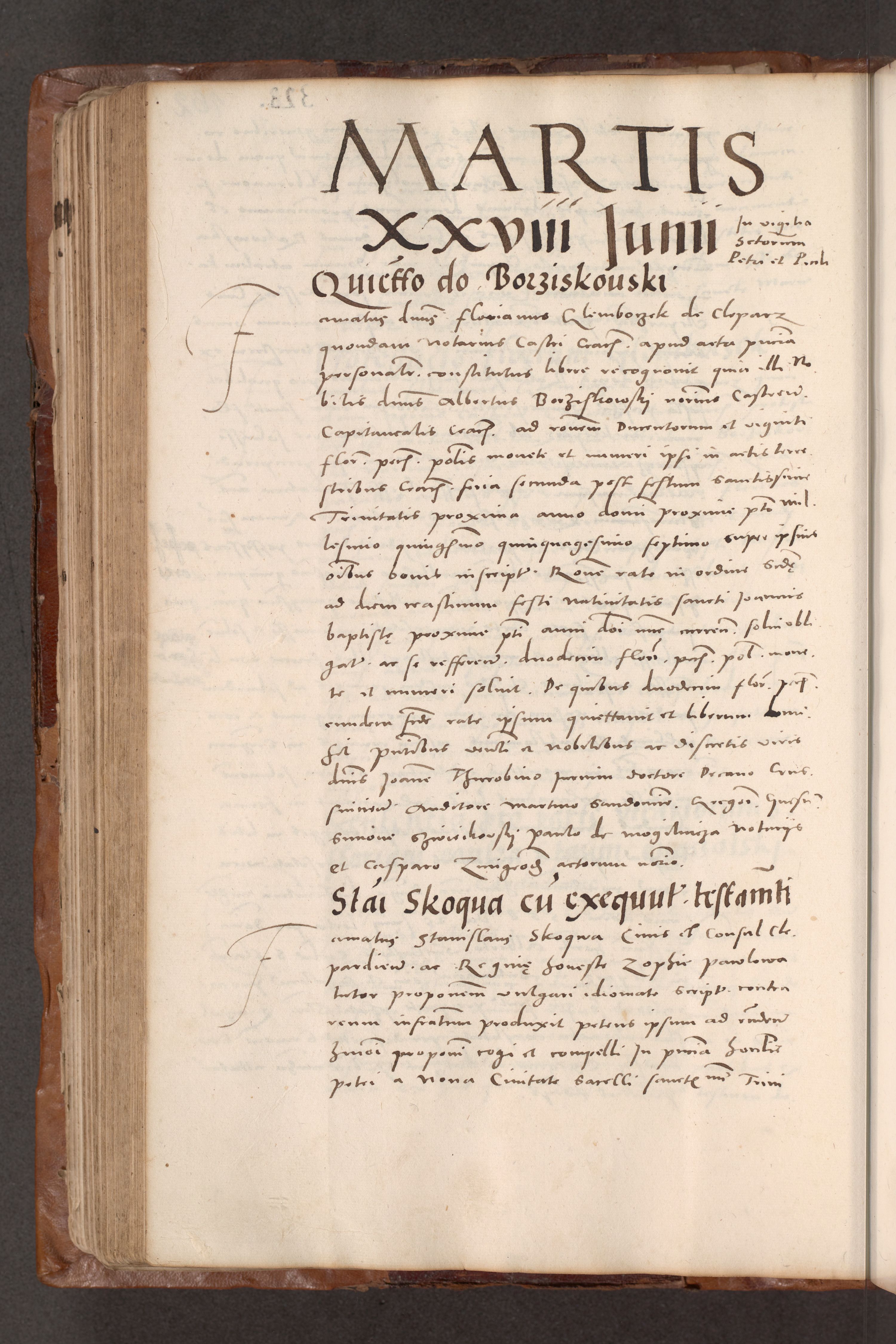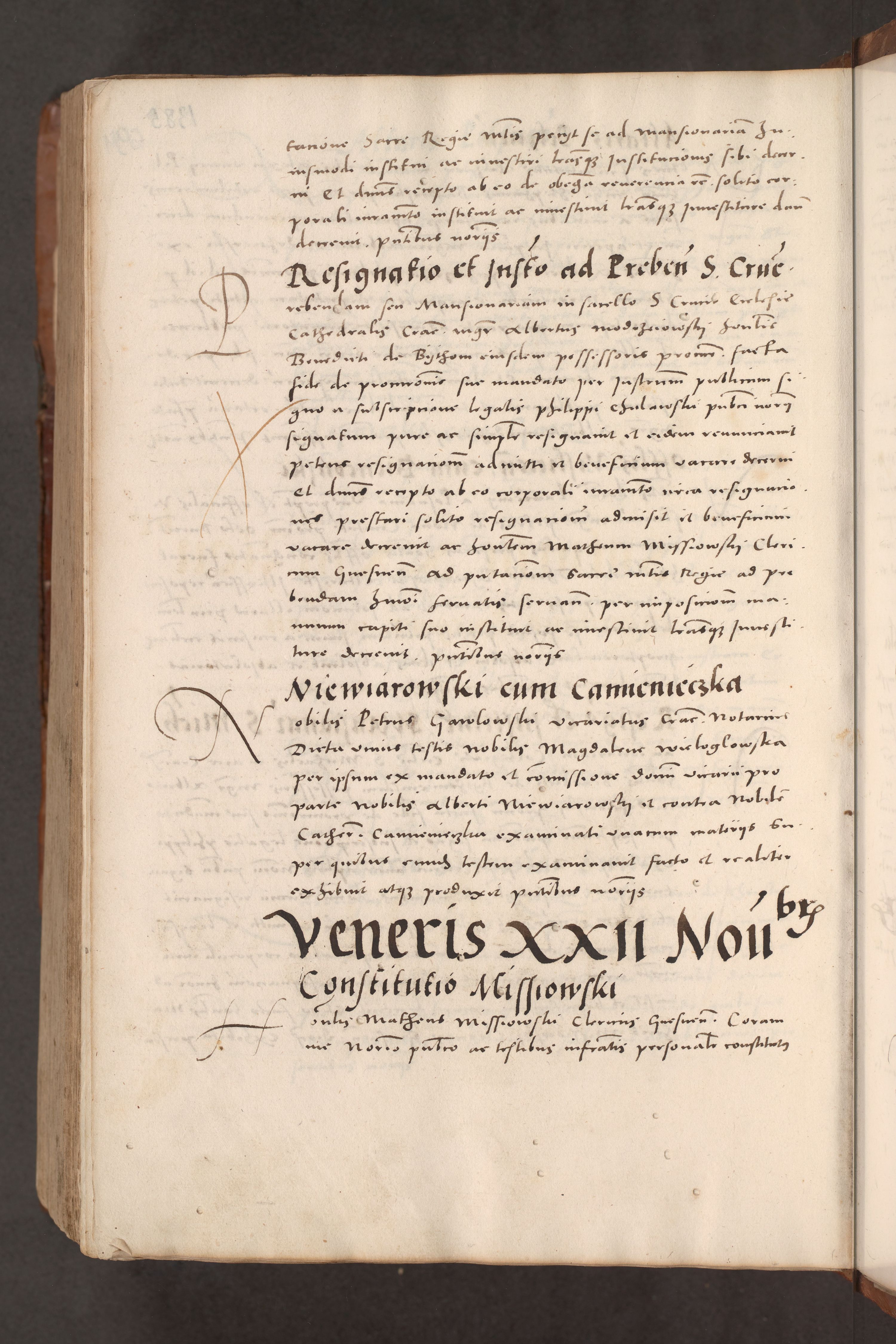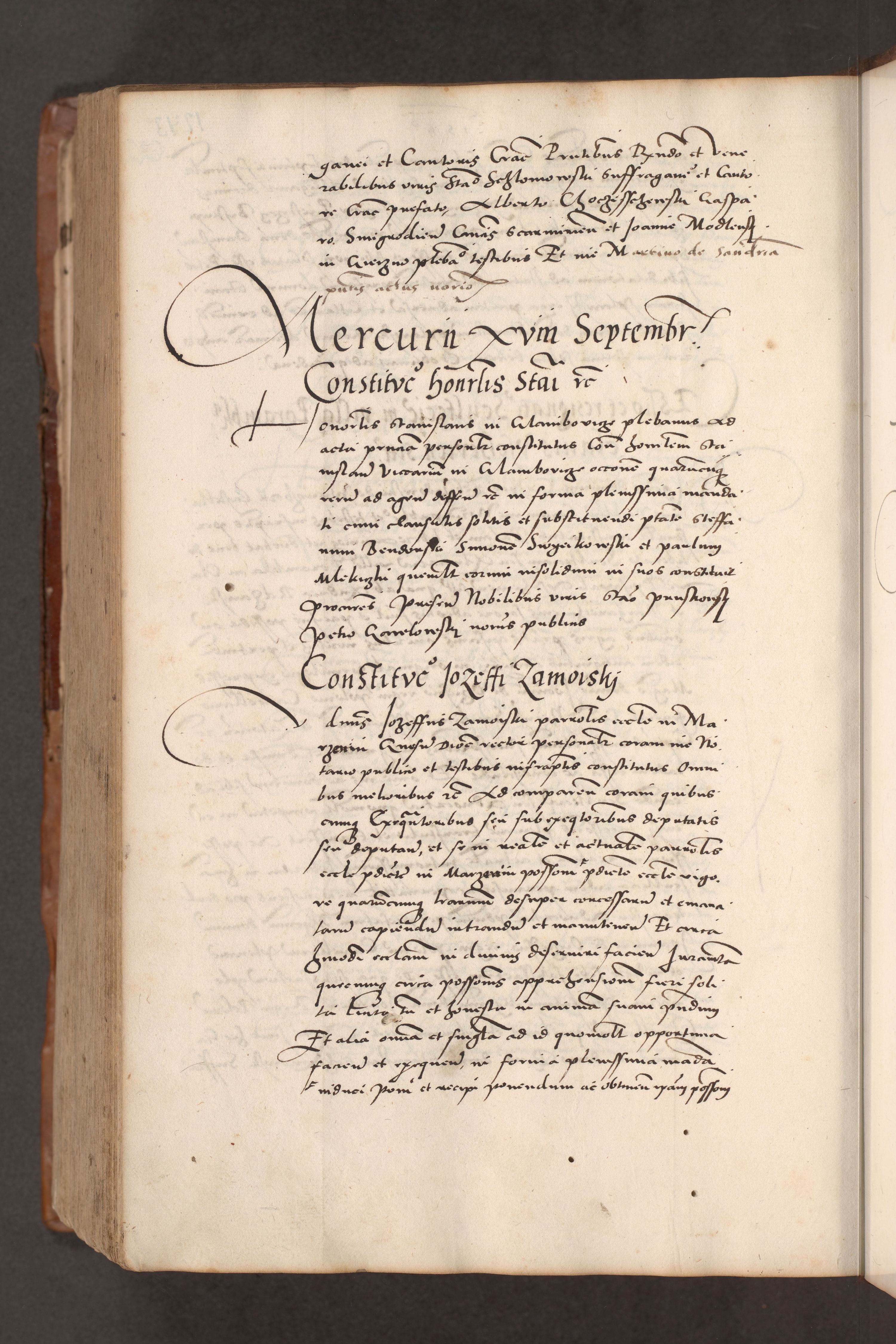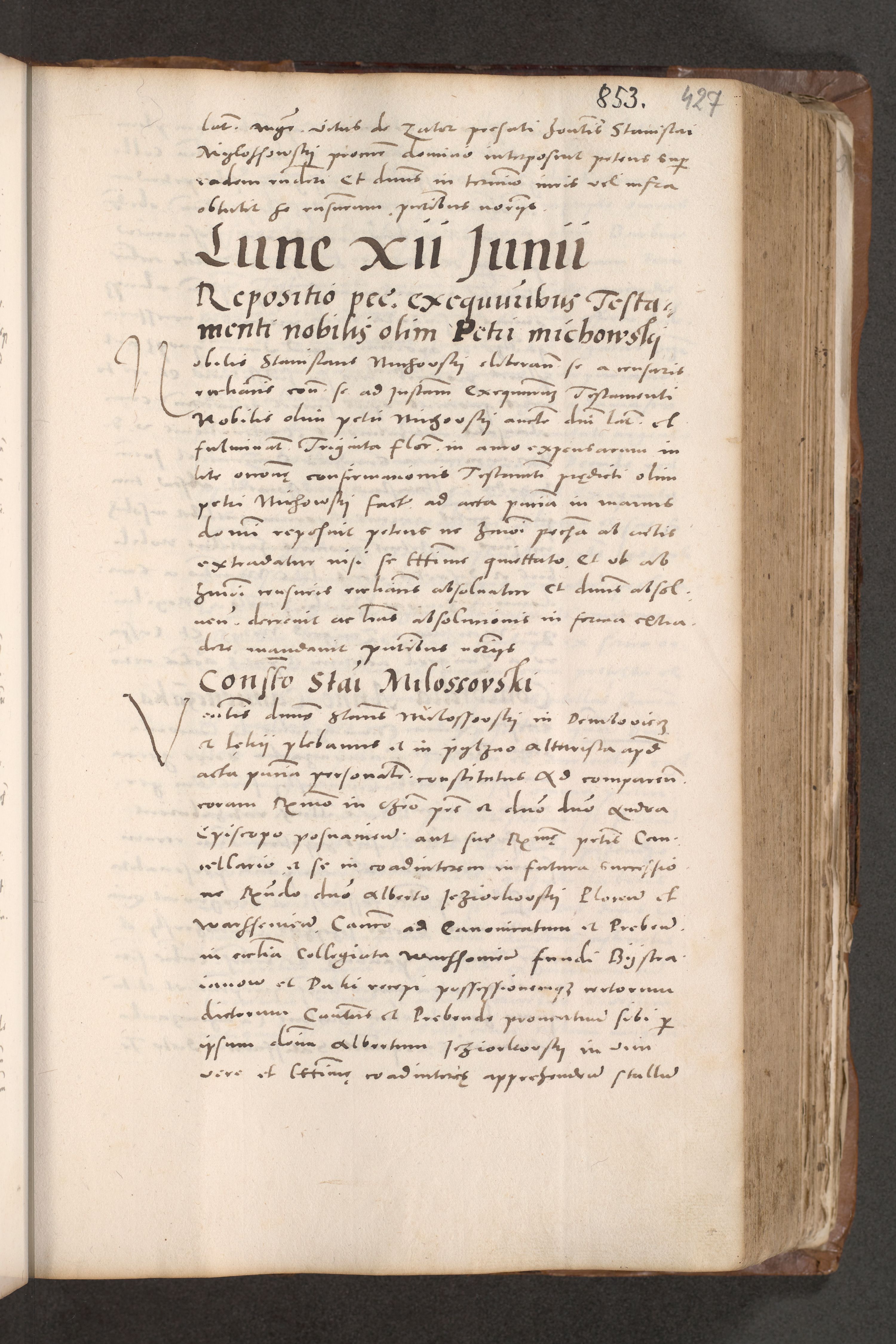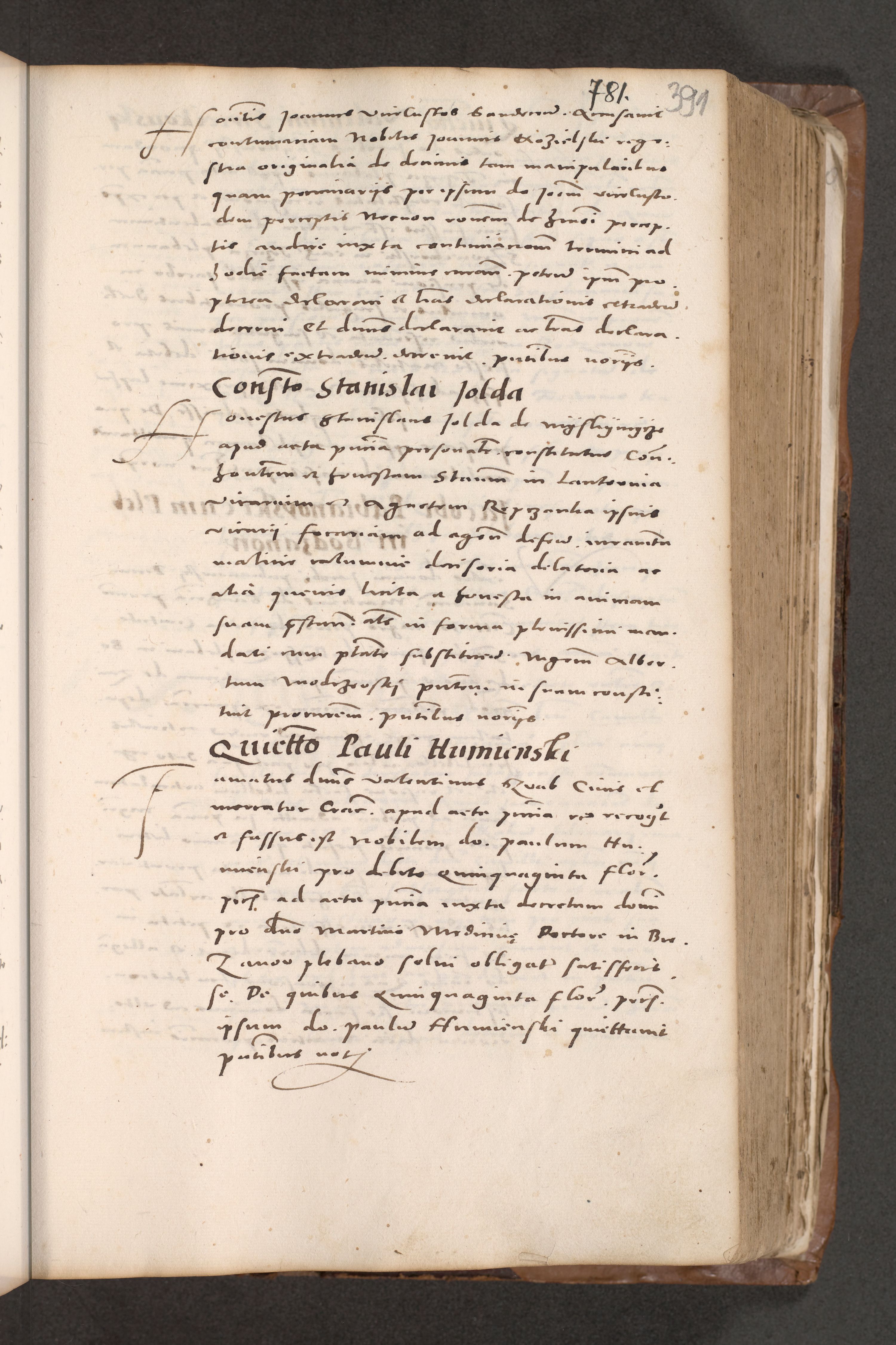 Acta actorum causarum, sententiarum tam diffinivarum quam interloquutoriarum, decretorum, obligationum, quietationum et constitutionum procuratorum coram reverendo domino Stanislao Szlomowski praeposito Calissieensi, archidiacono Sandecensi, canonico vicarioque in spiritualibus generali Cracoviensi ad annum Domini millesimum quingentesimum quinquagesimum octavum, cuius indicio prima, pontificatus sanctissimi domini nostri Pauli divina providencia pape quarti, anno illius tercio, feliciter sequuntur.