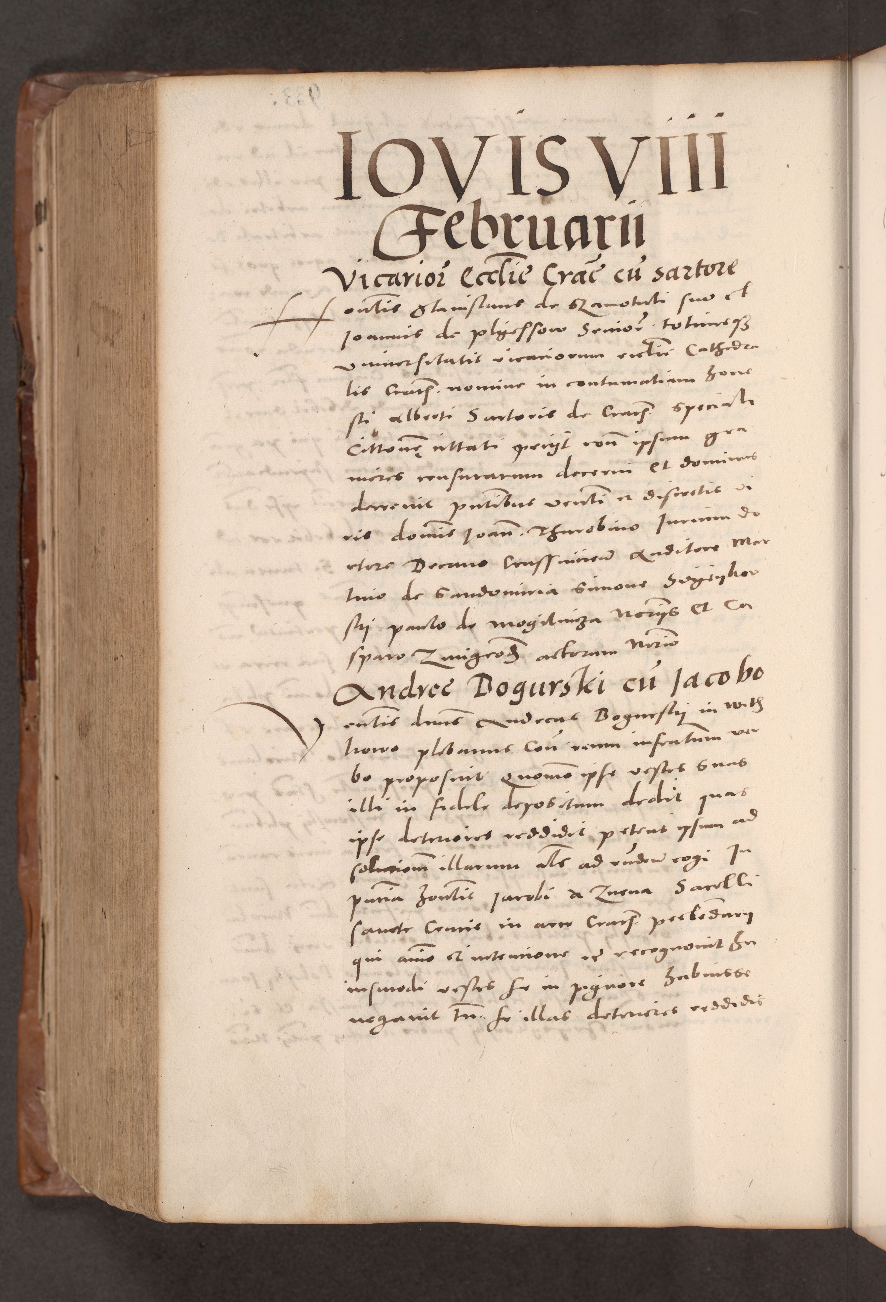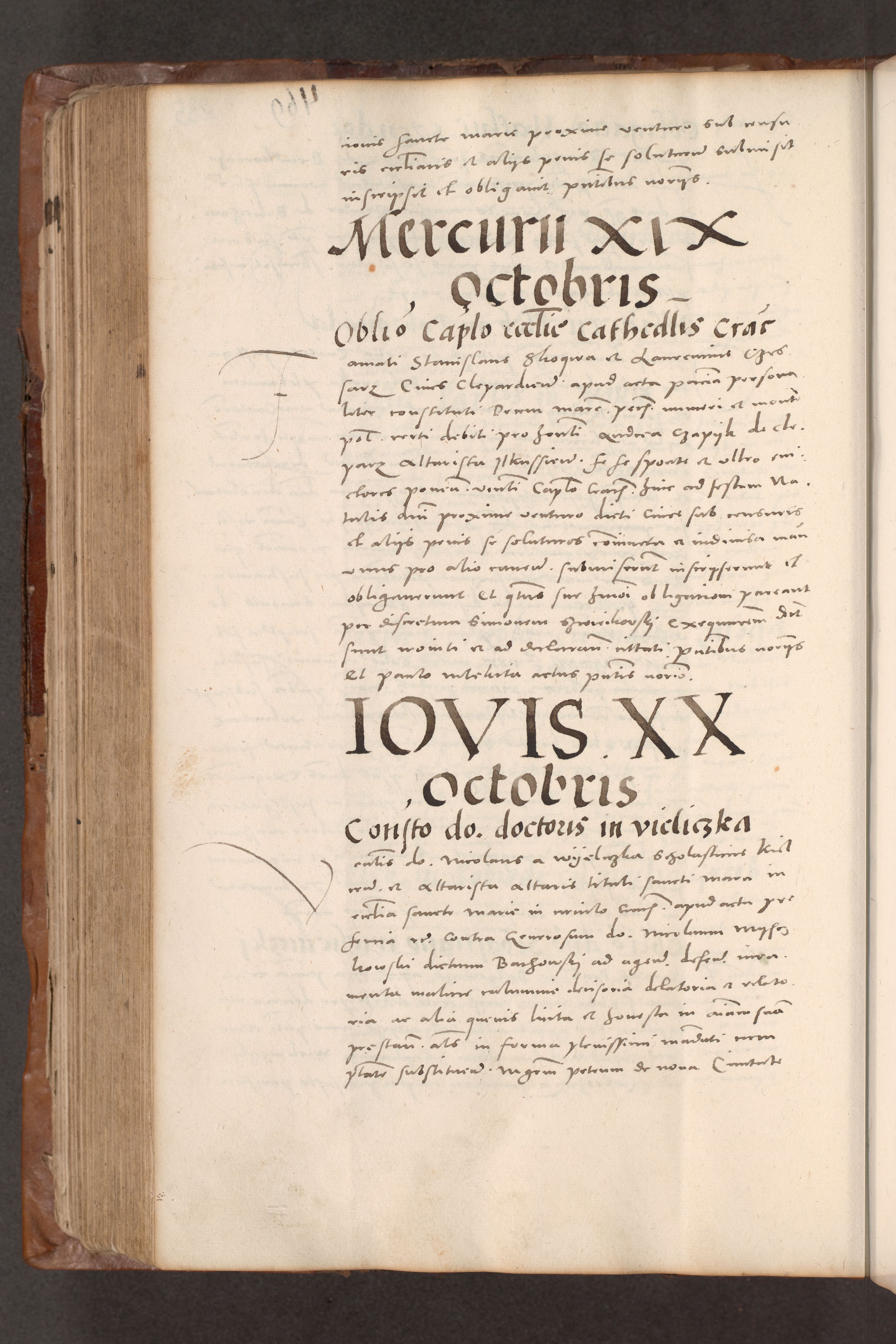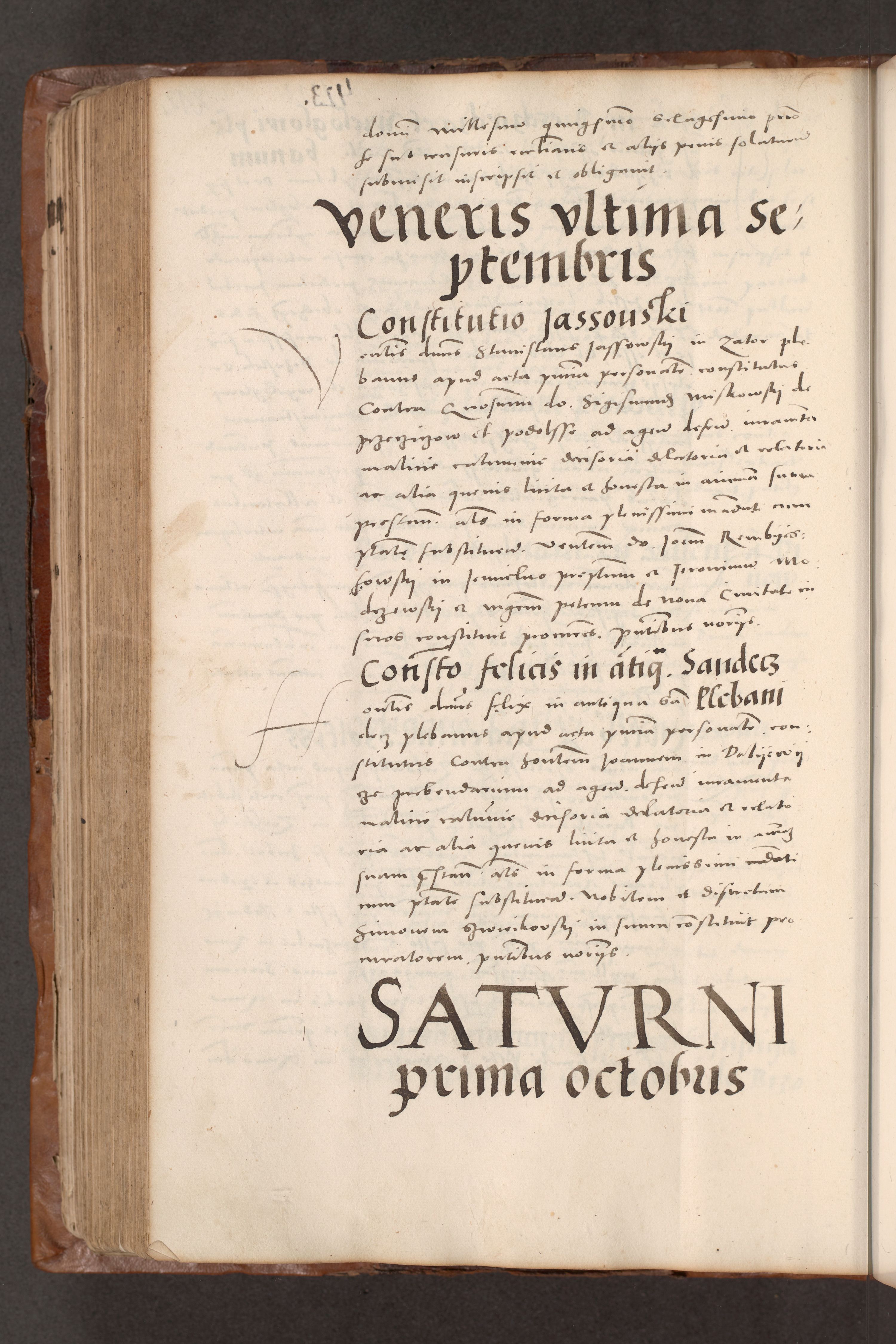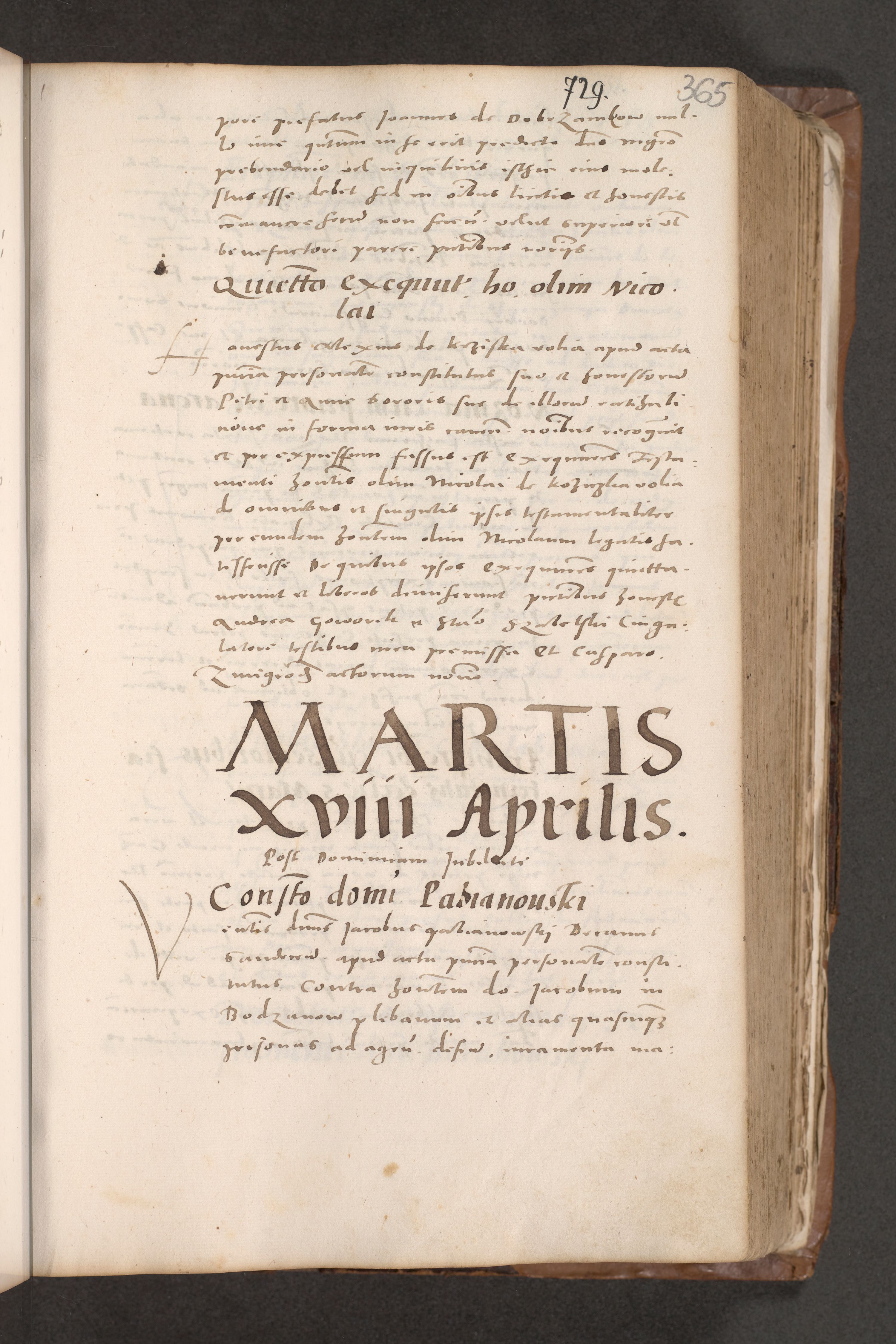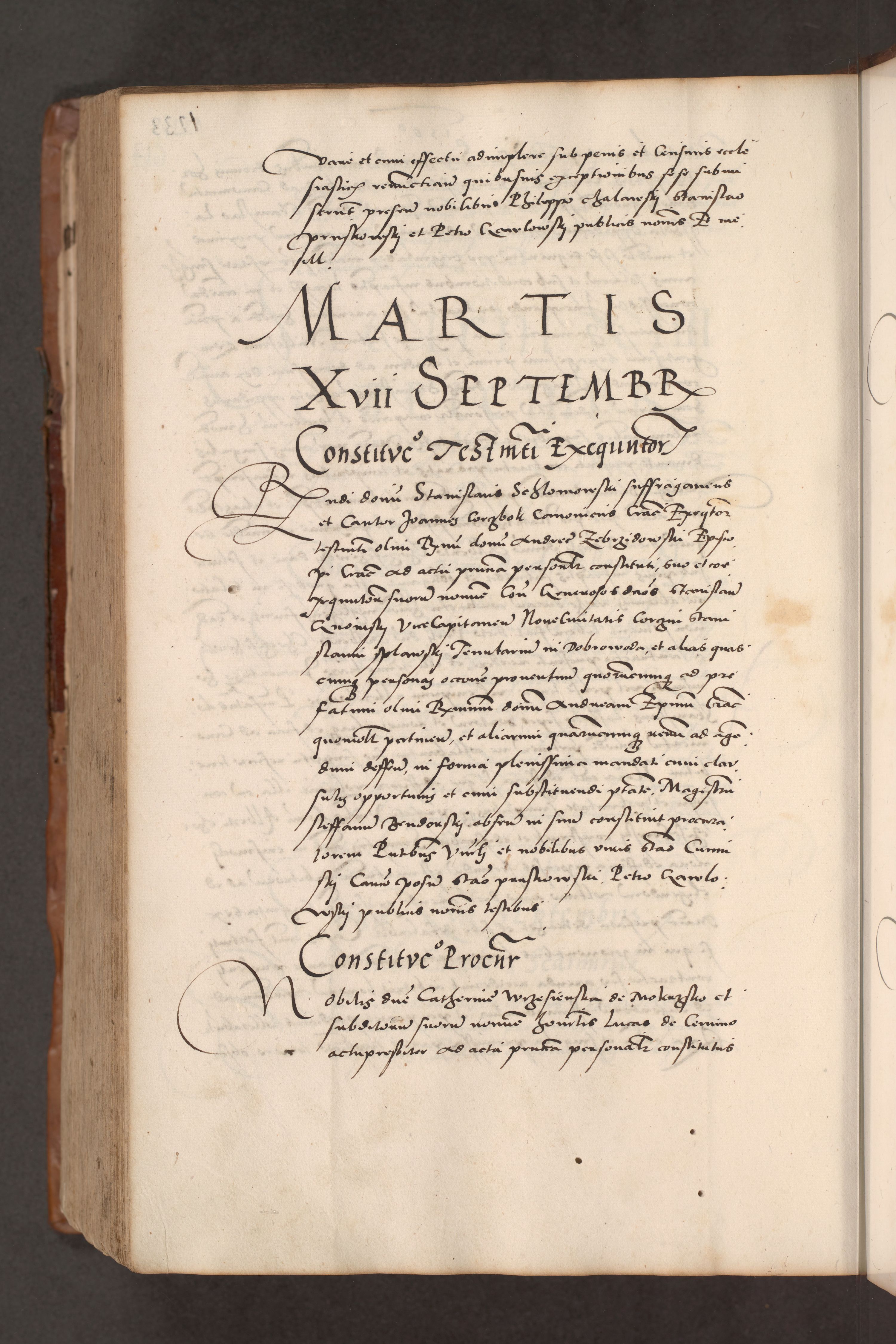 Acta actorum causarum, sententiarum tam diffinivarum quam interloquutoriarum, decretorum, obligationum, quietationum et constitutionum procuratorum coram reverendo domino Stanislao Szlomowski praeposito Calissieensi, archidiacono Sandecensi, canonico vicarioque in spiritualibus generali Cracoviensi ad annum Domini millesimum quingentesimum quinquagesimum octavum, cuius indicio prima, pontificatus sanctissimi domini nostri Pauli divina providencia pape quarti, anno illius tercio, feliciter sequuntur.