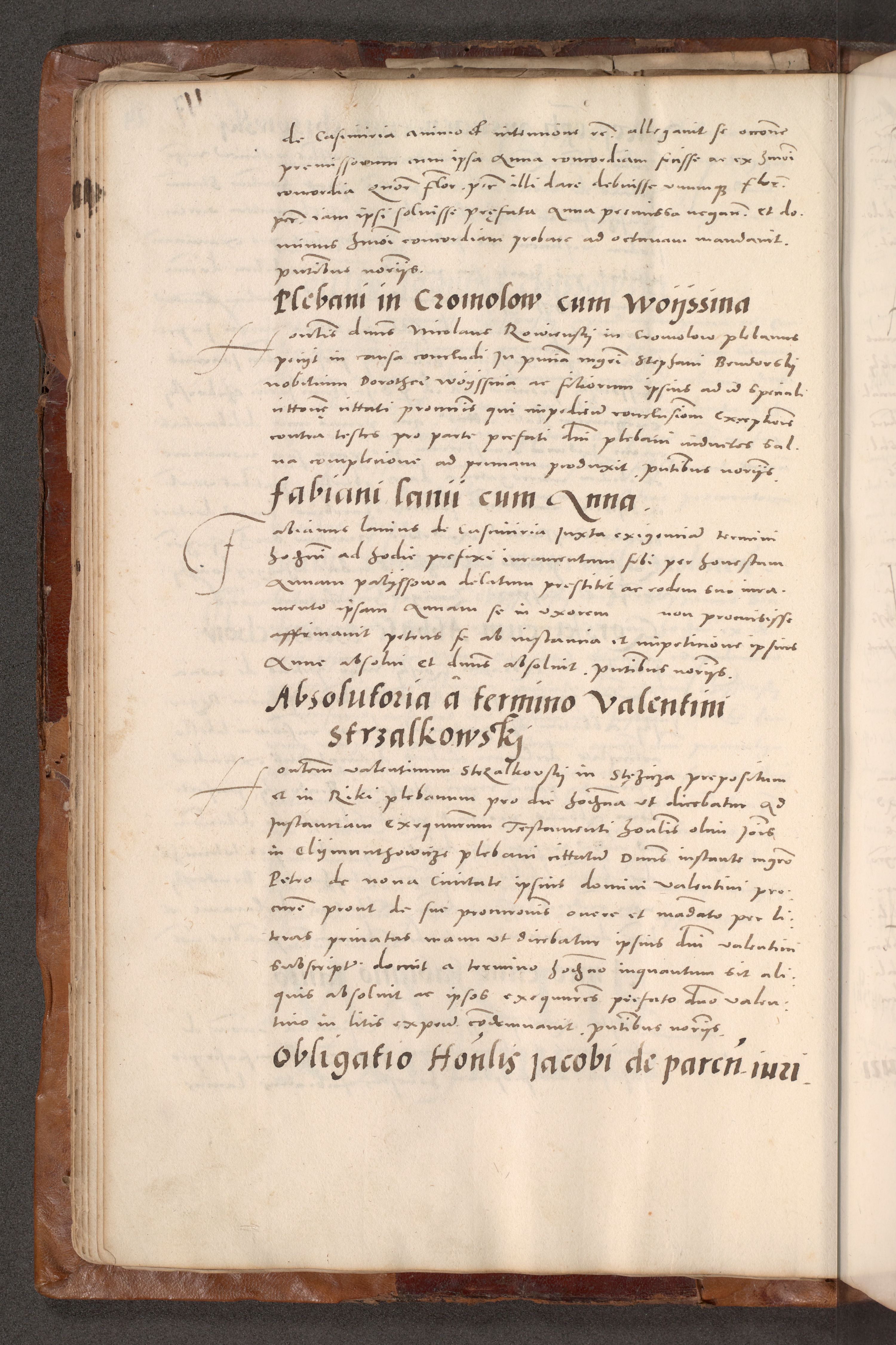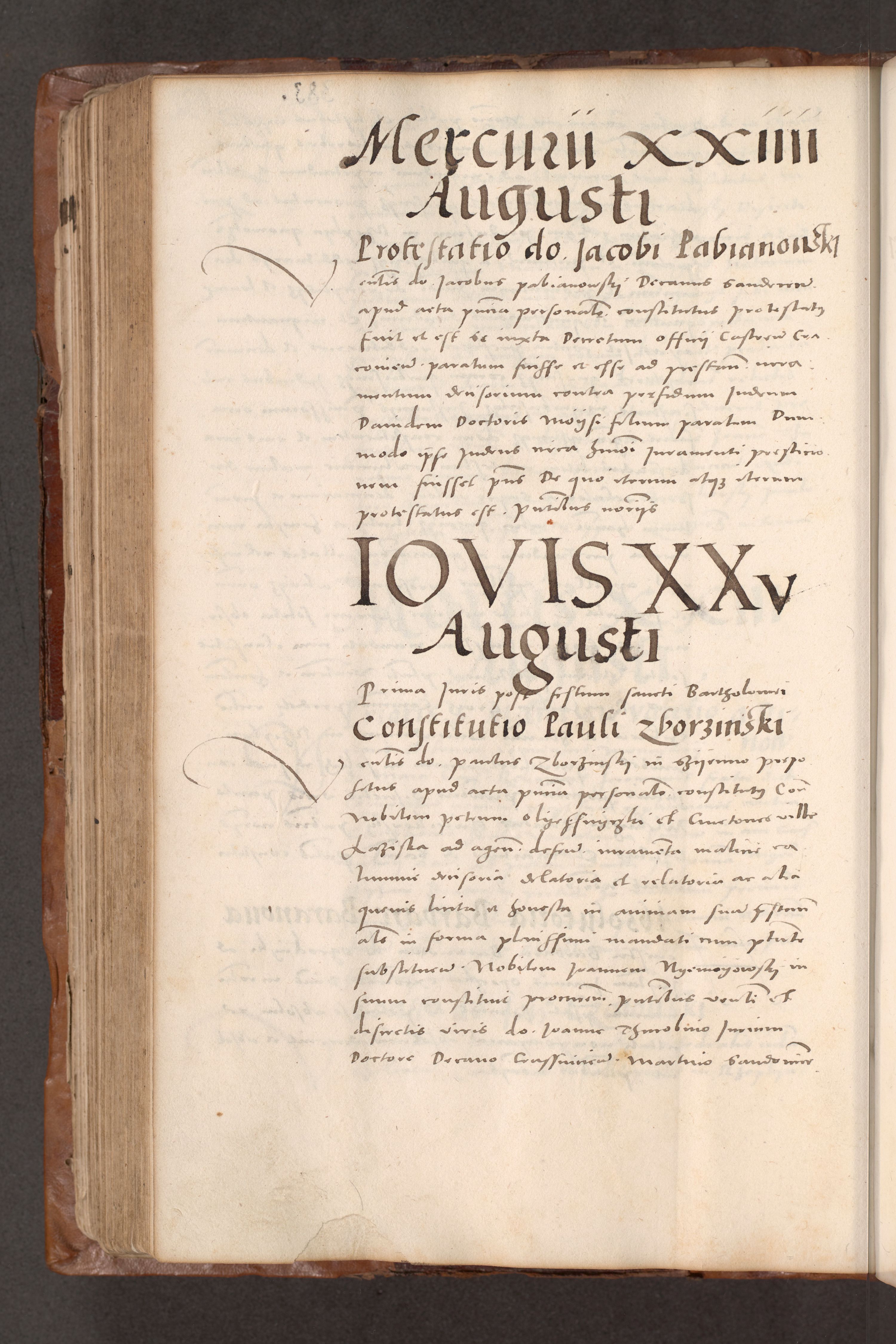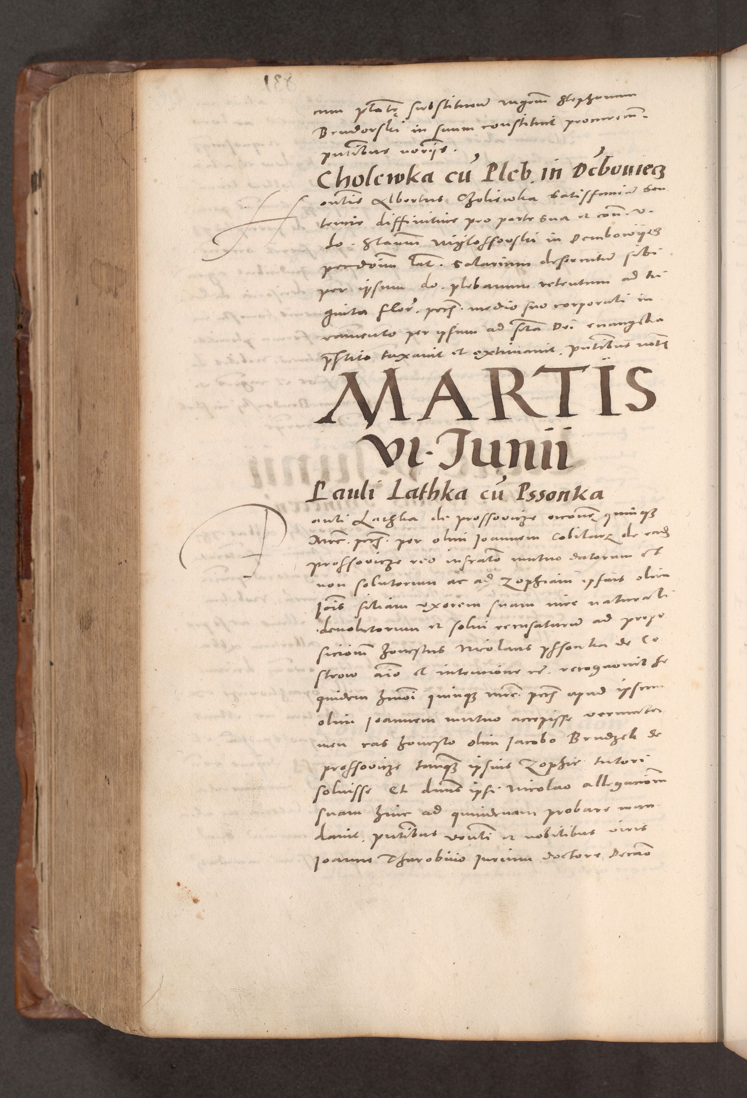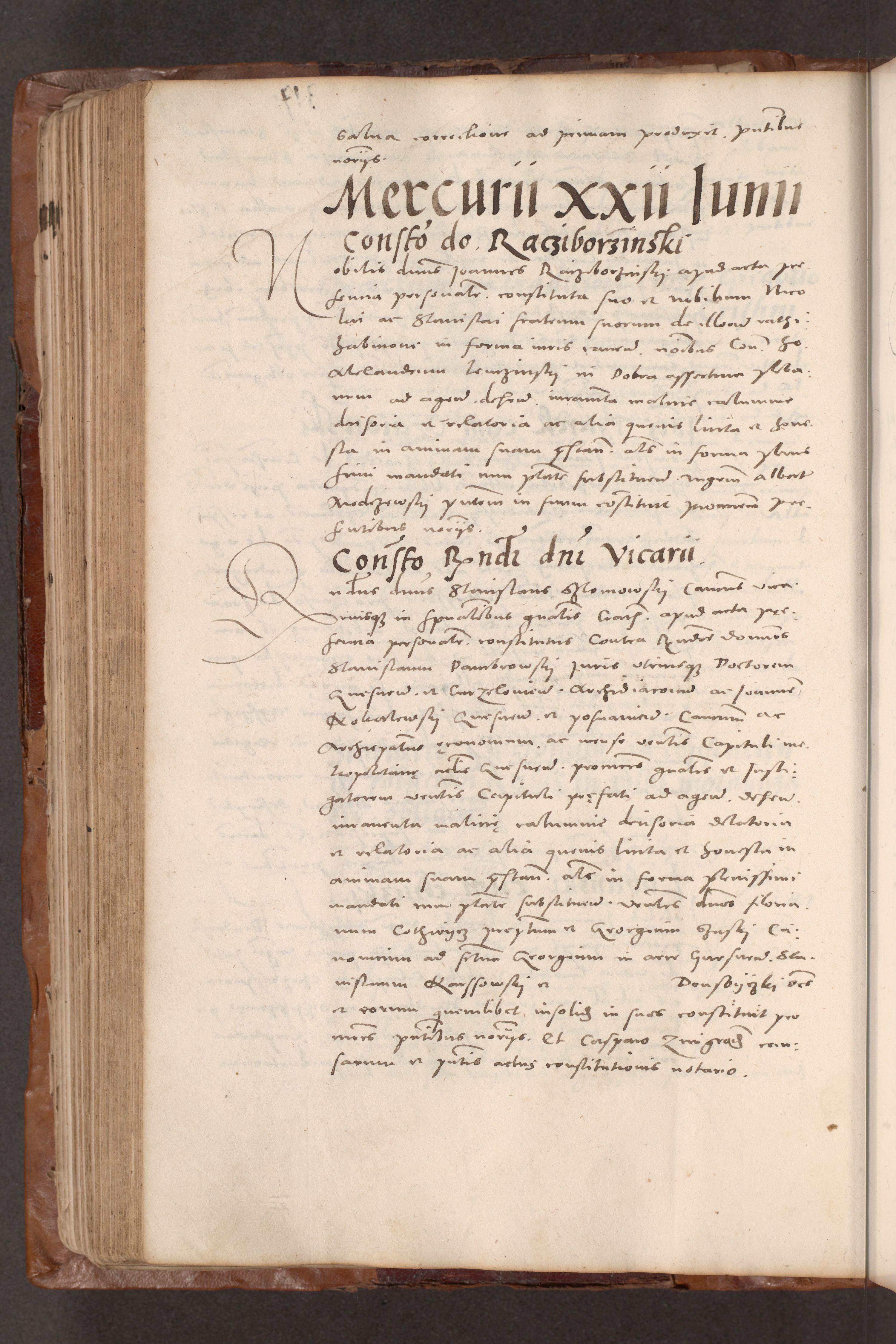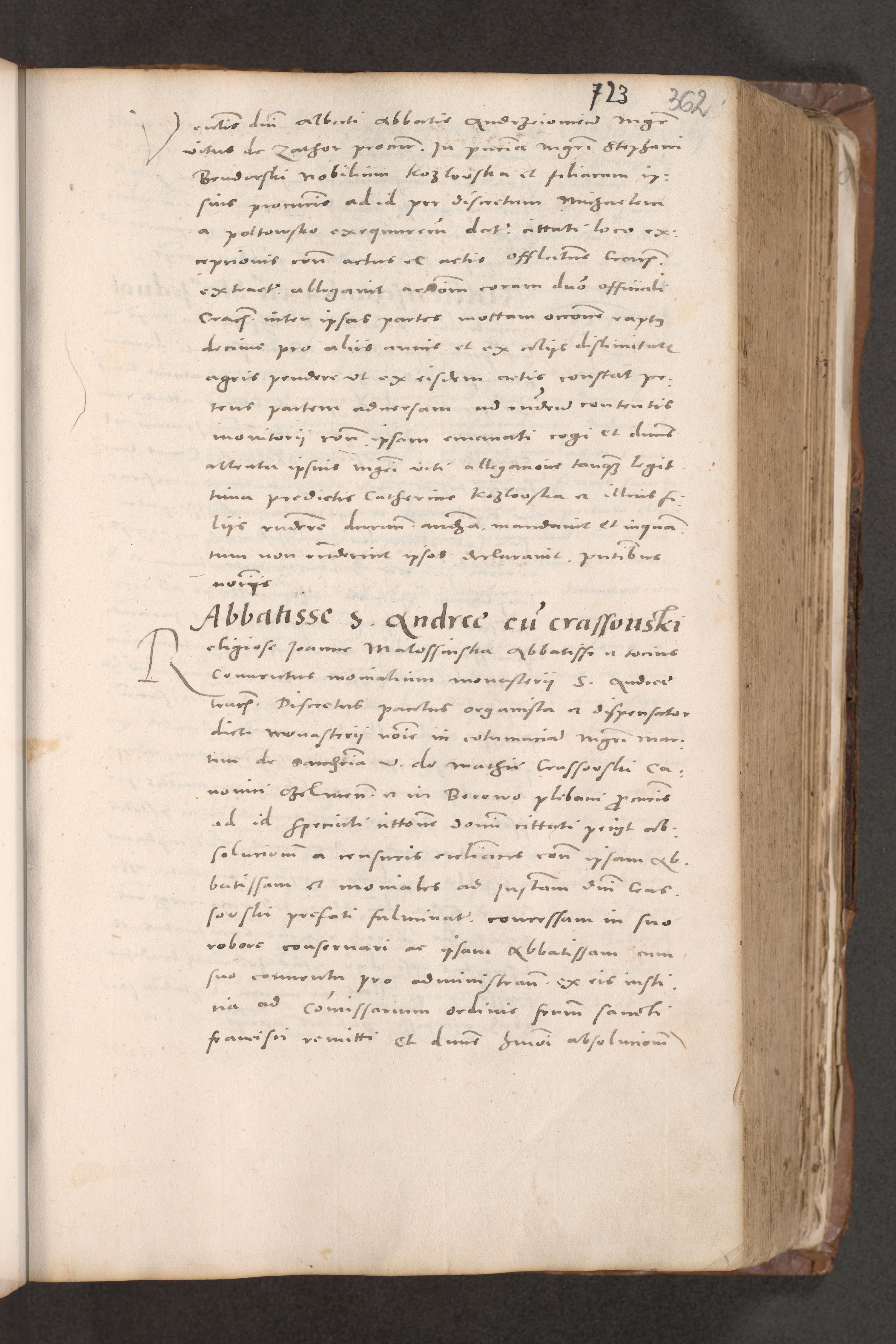 Acta actorum causarum, sententiarum tam diffinivarum quam interloquutoriarum, decretorum, obligationum, quietationum et constitutionum procuratorum coram reverendo domino Stanislao Szlomowski praeposito Calissieensi, archidiacono Sandecensi, canonico vicarioque in spiritualibus generali Cracoviensi ad annum Domini millesimum quingentesimum quinquagesimum octavum, cuius indicio prima, pontificatus sanctissimi domini nostri Pauli divina providencia pape quarti, anno illius tercio, feliciter sequuntur.