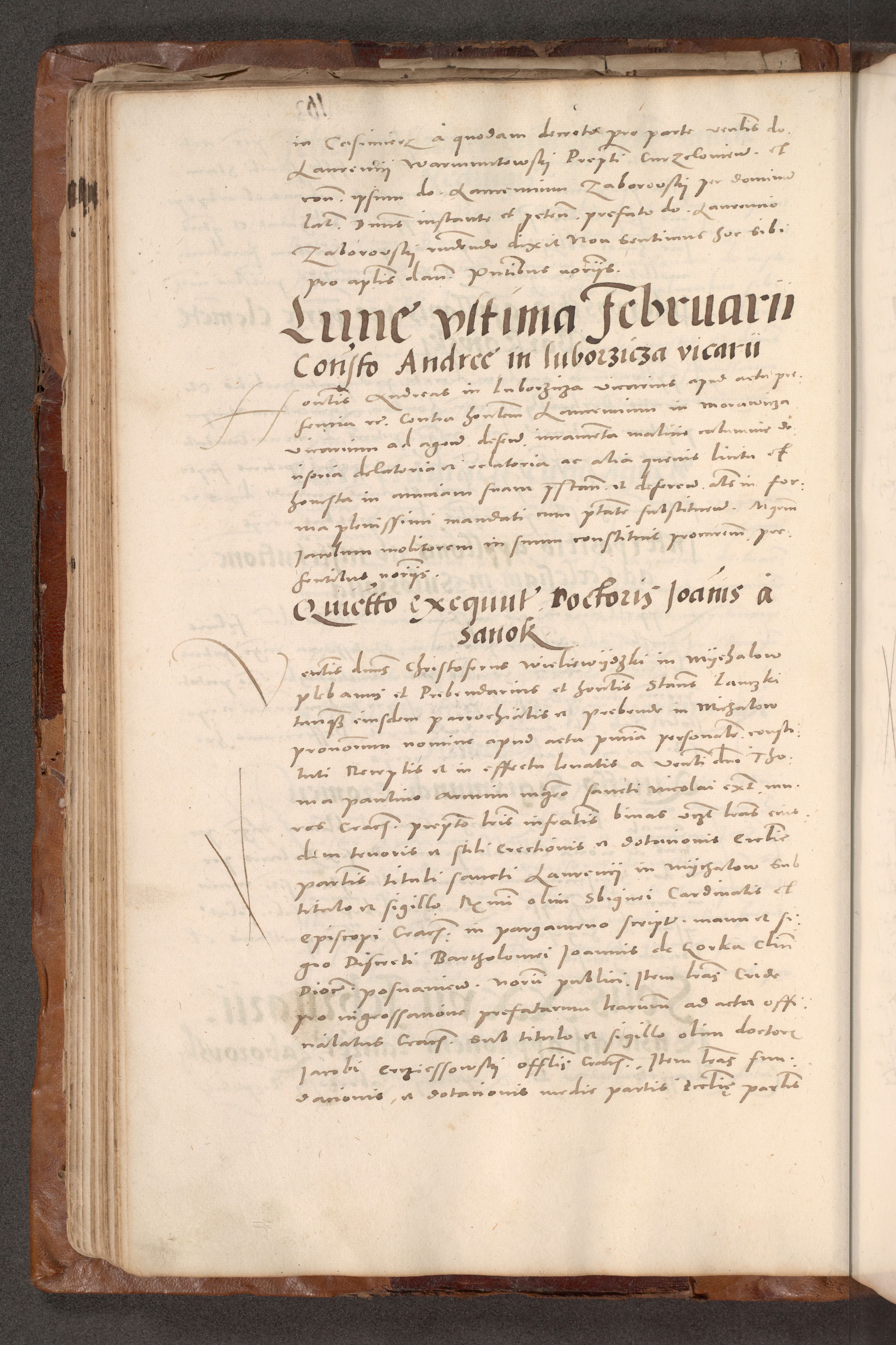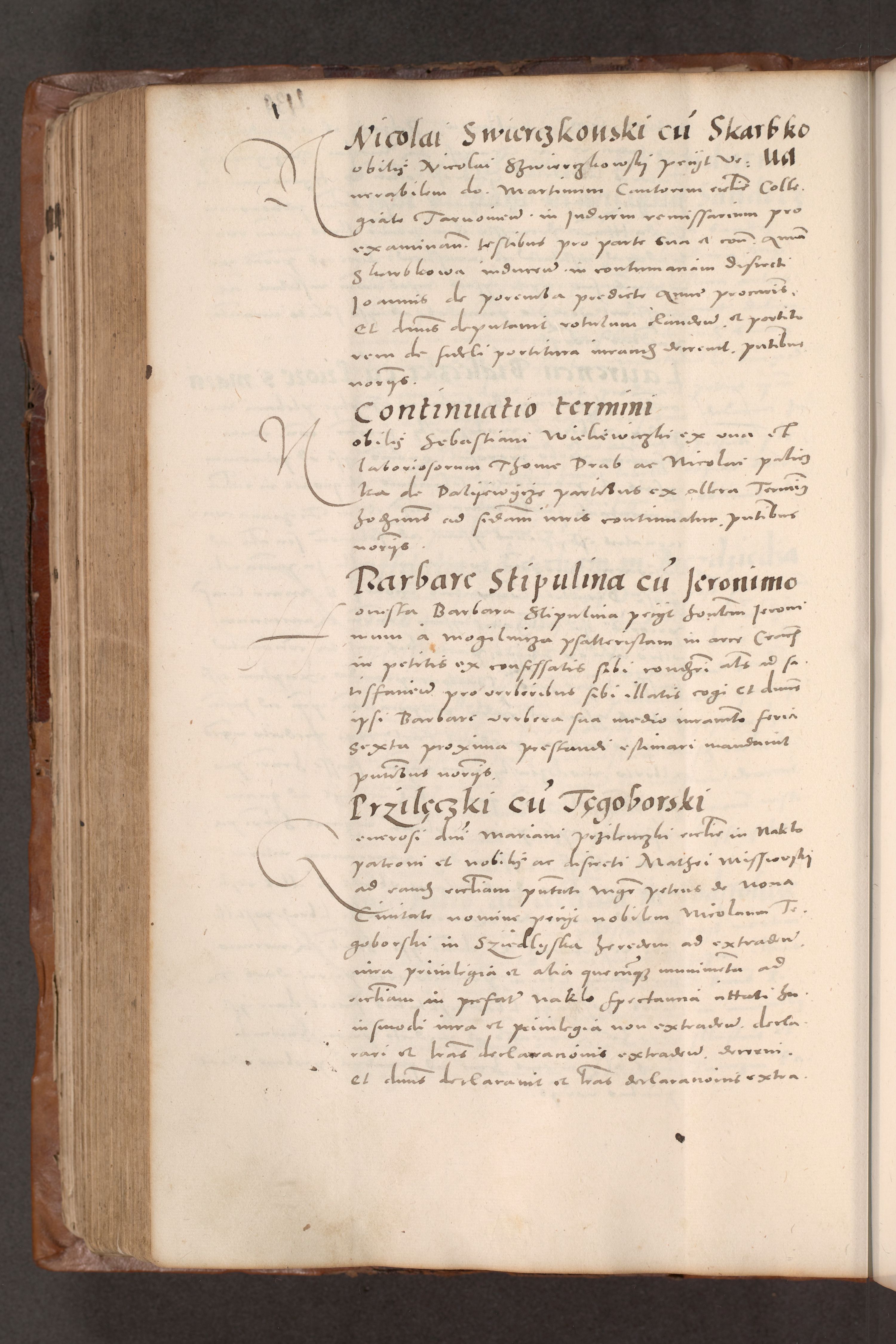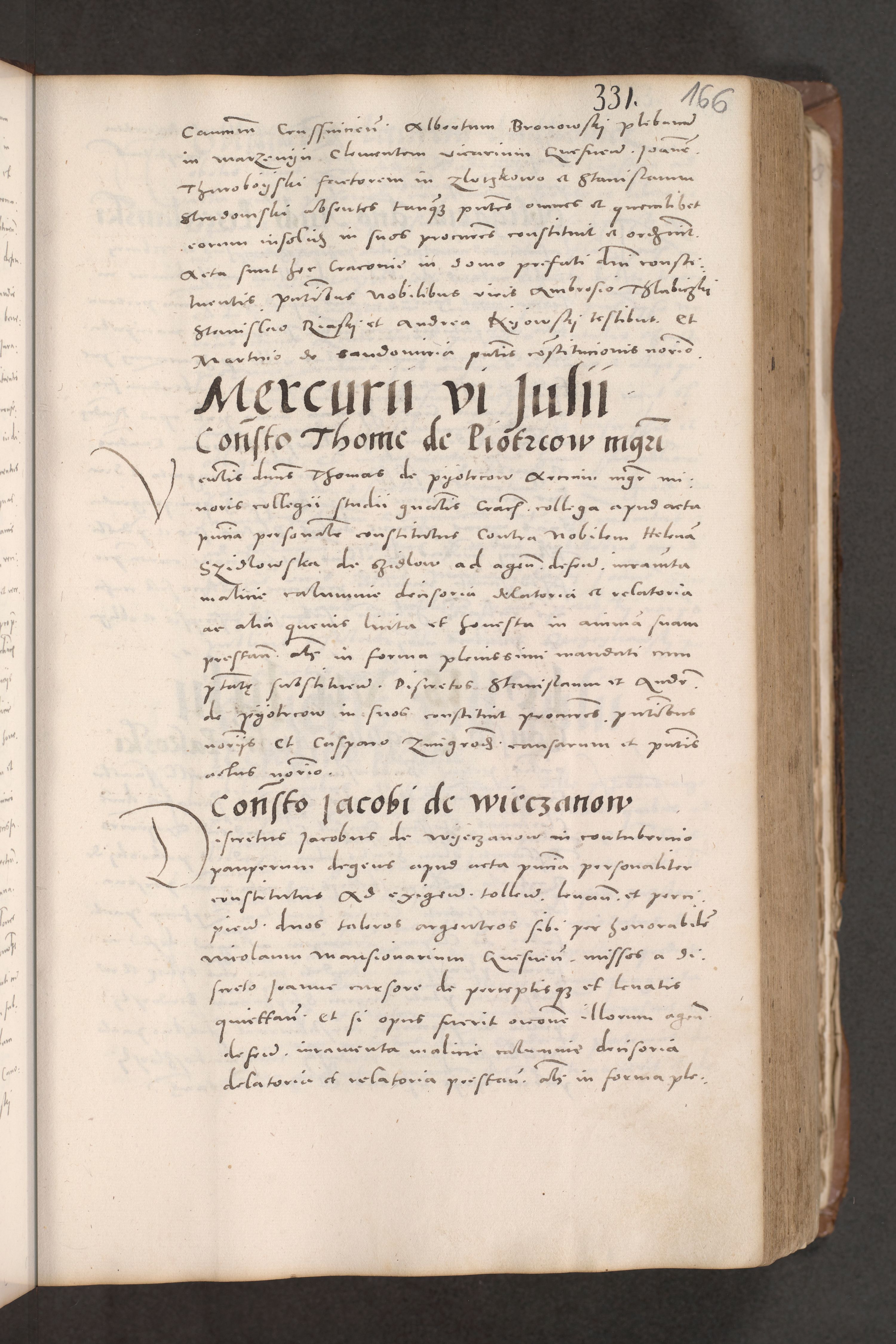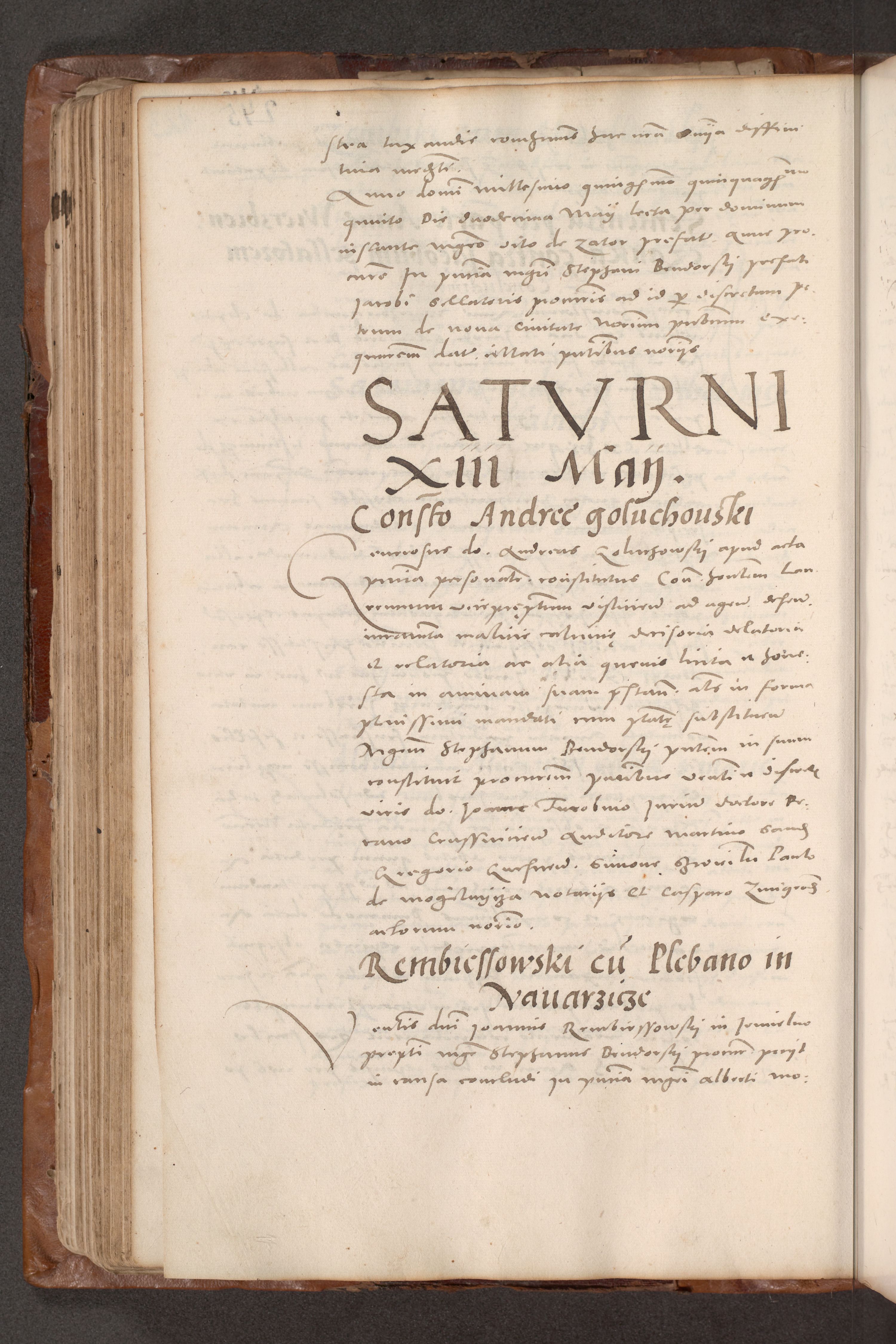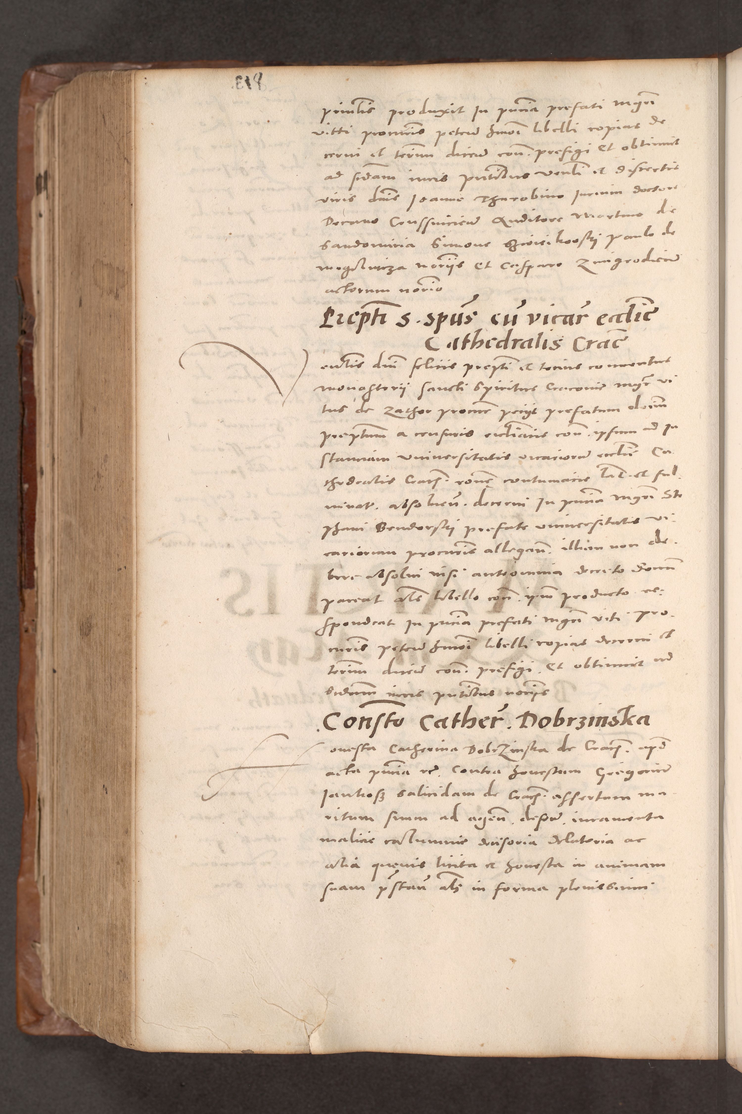 Acta actorum causarum, sententiarum tam diffinivarum quam interloquutoriarum, decretorum, obligationum, quietationum et constitutionum procuratorum coram reverendo domino Stanislao Szlomowski praeposito Calissieensi, archidiacono Sandecensi, canonico vicarioque in spiritualibus generali Cracoviensi ad annum Domini millesimum quingentesimum quinquagesimum octavum, cuius indicio prima, pontificatus sanctissimi domini nostri Pauli divina providencia pape quarti, anno illius tercio, feliciter sequuntur.