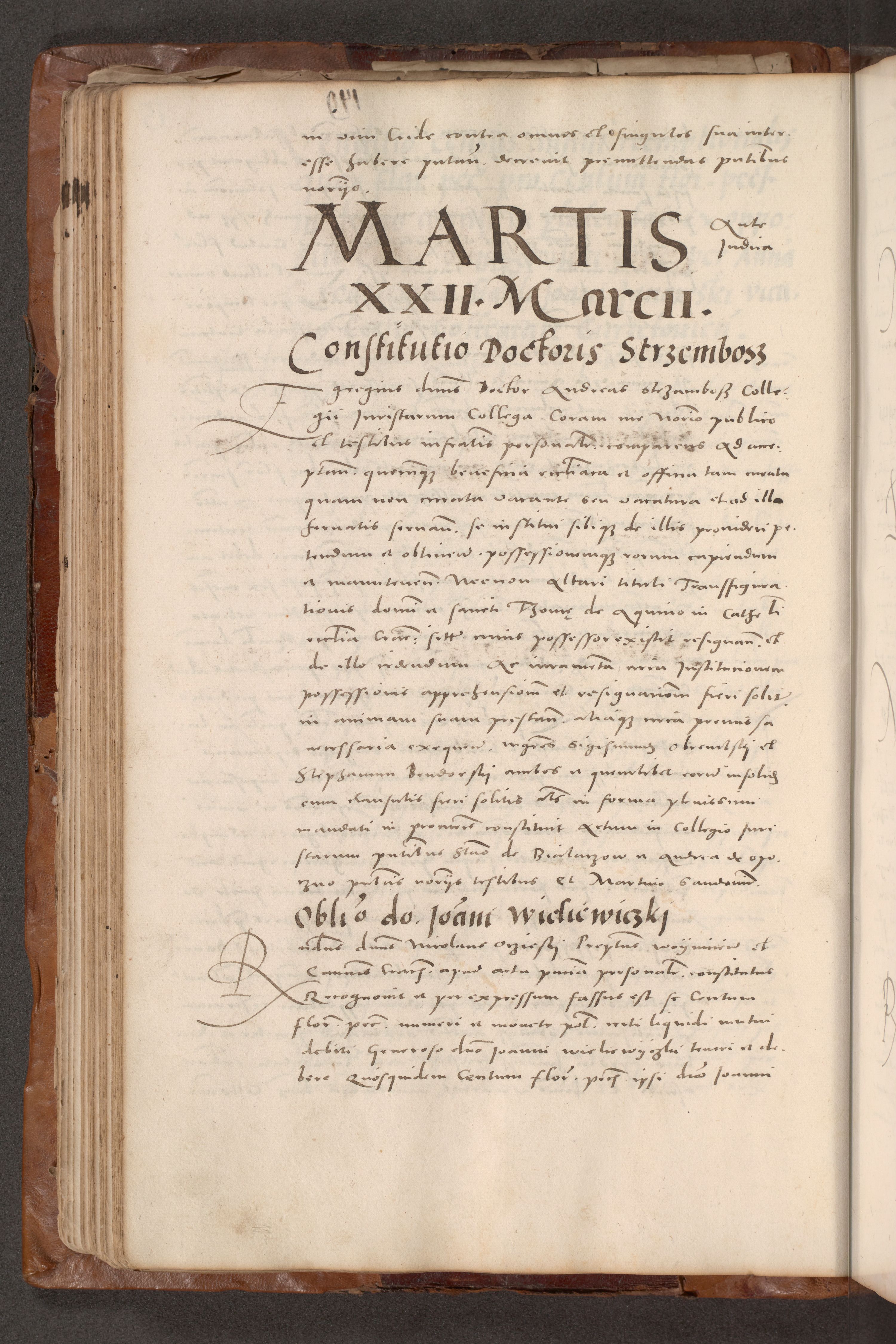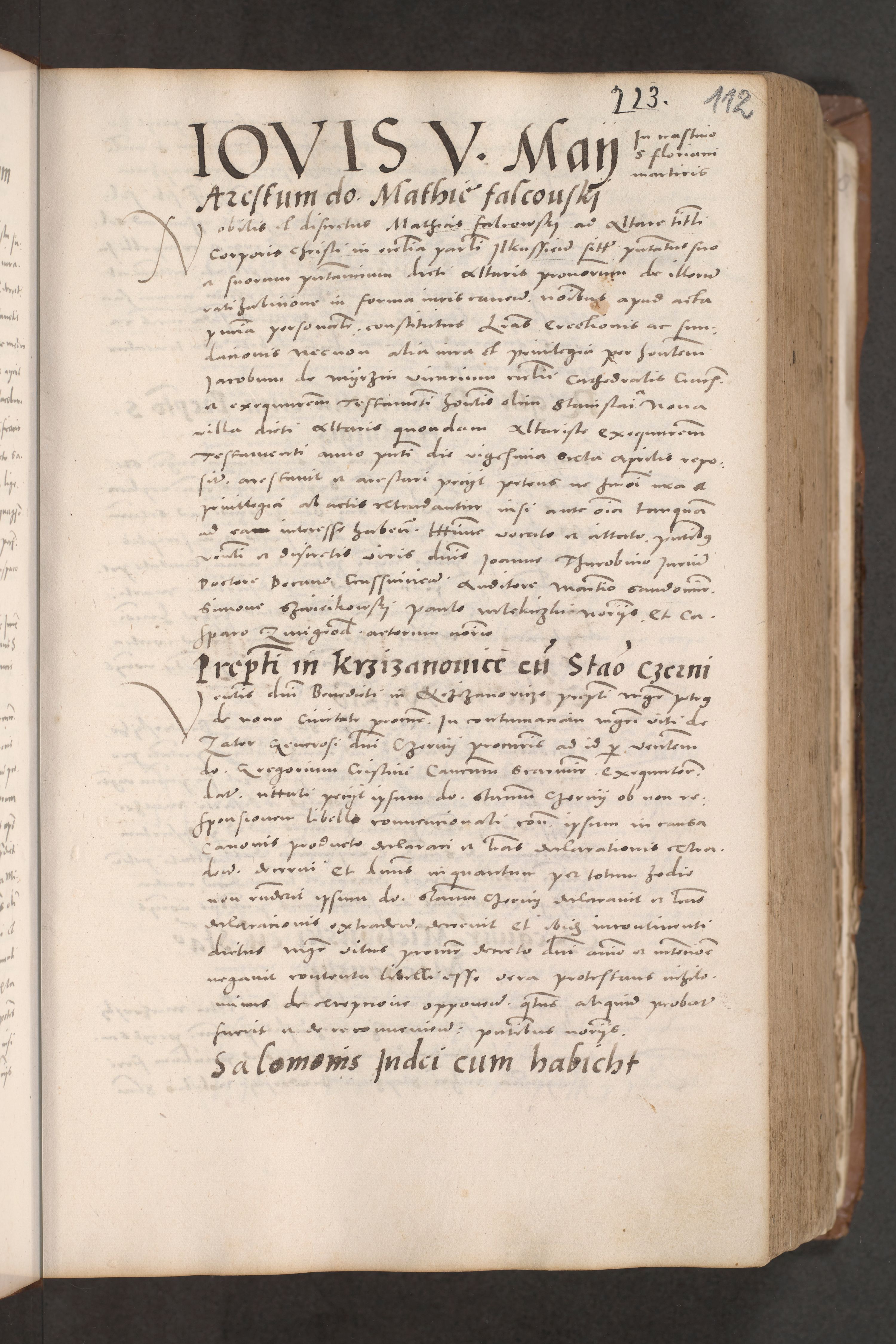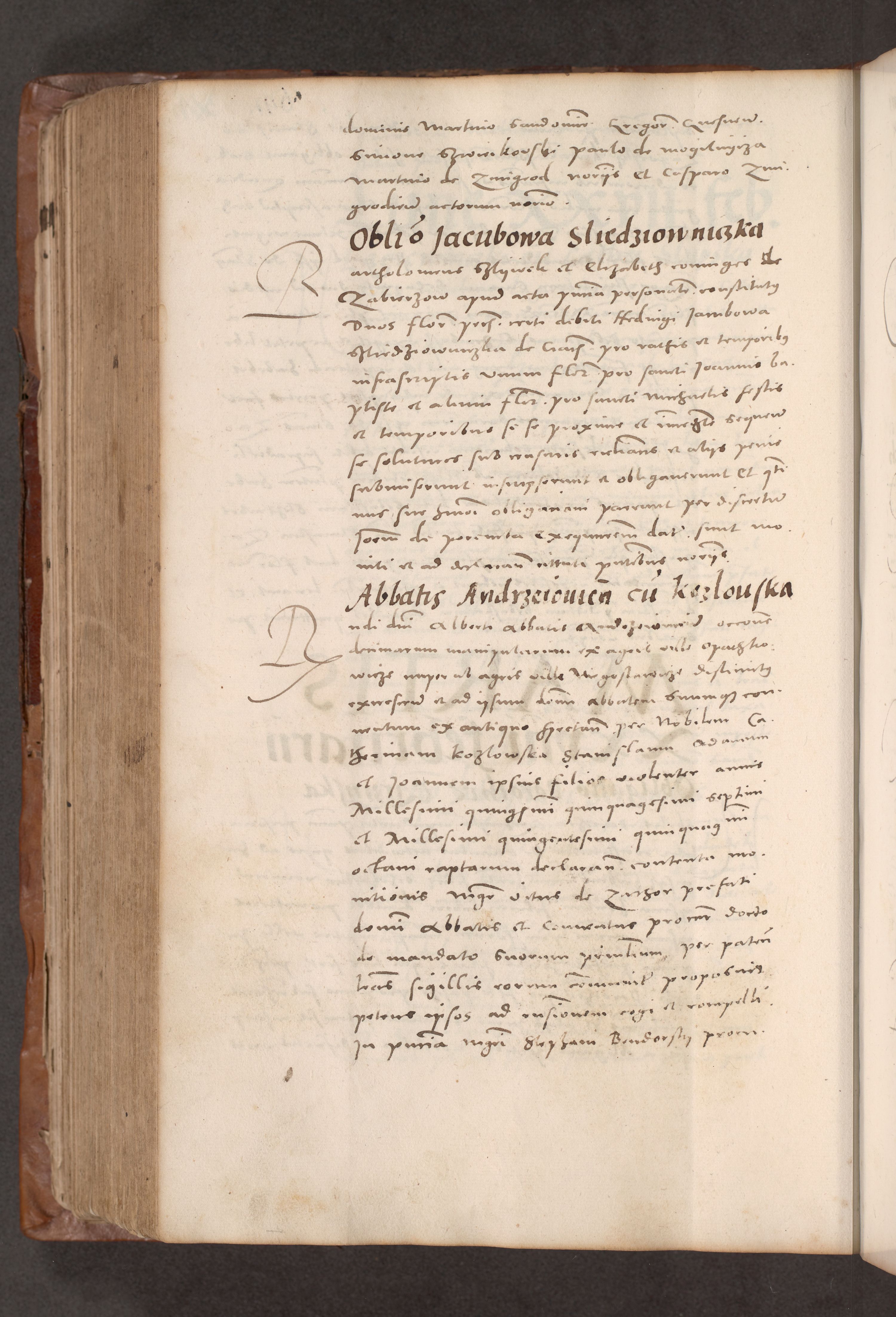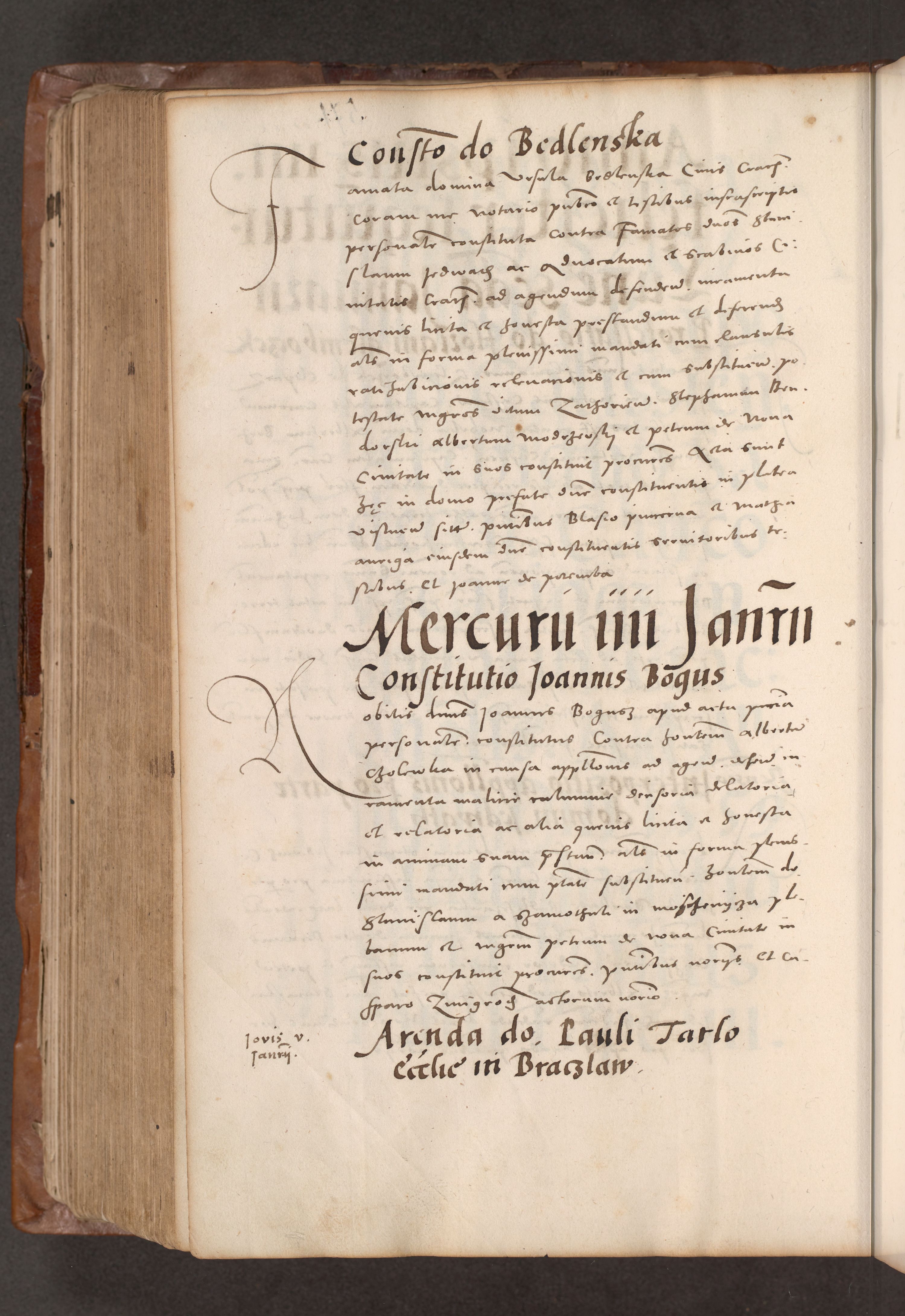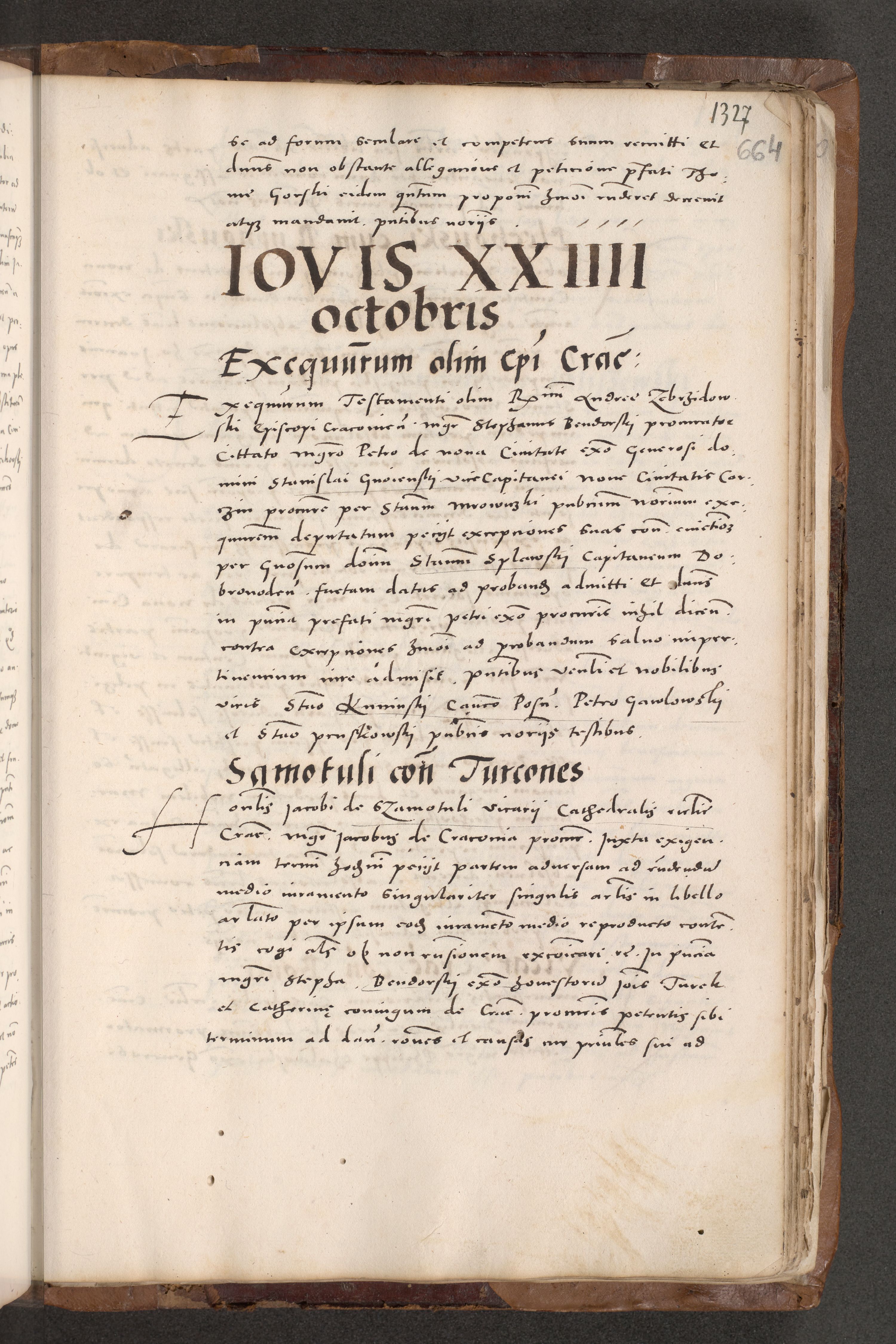 Acta actorum causarum, sententiarum tam diffinivarum quam interloquutoriarum, decretorum, obligationum, quietationum et constitutionum procuratorum coram reverendo domino Stanislao Szlomowski praeposito Calissieensi, archidiacono Sandecensi, canonico vicarioque in spiritualibus generali Cracoviensi ad annum Domini millesimum quingentesimum quinquagesimum octavum, cuius indicio prima, pontificatus sanctissimi domini nostri Pauli divina providencia pape quarti, anno illius tercio, feliciter sequuntur.
