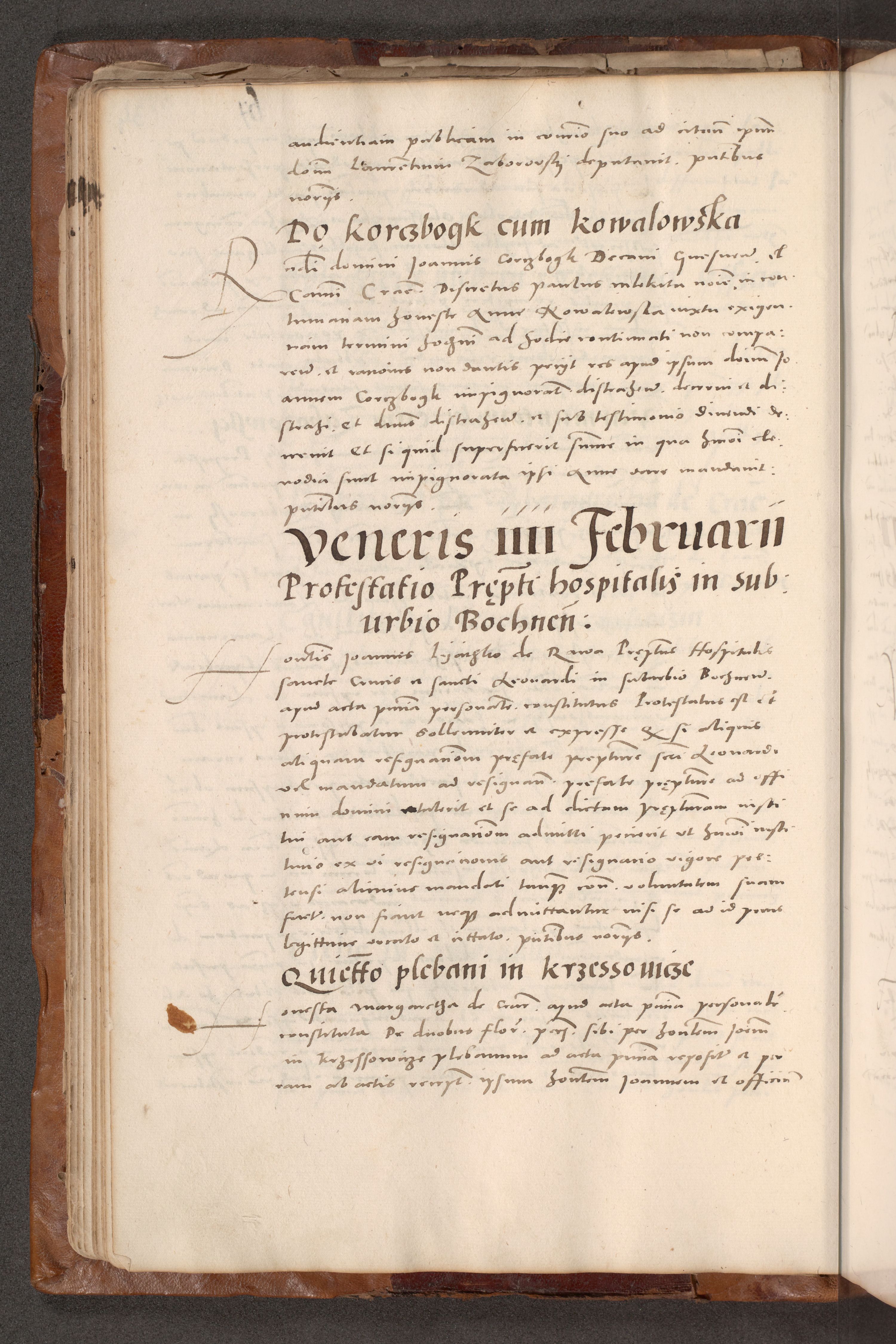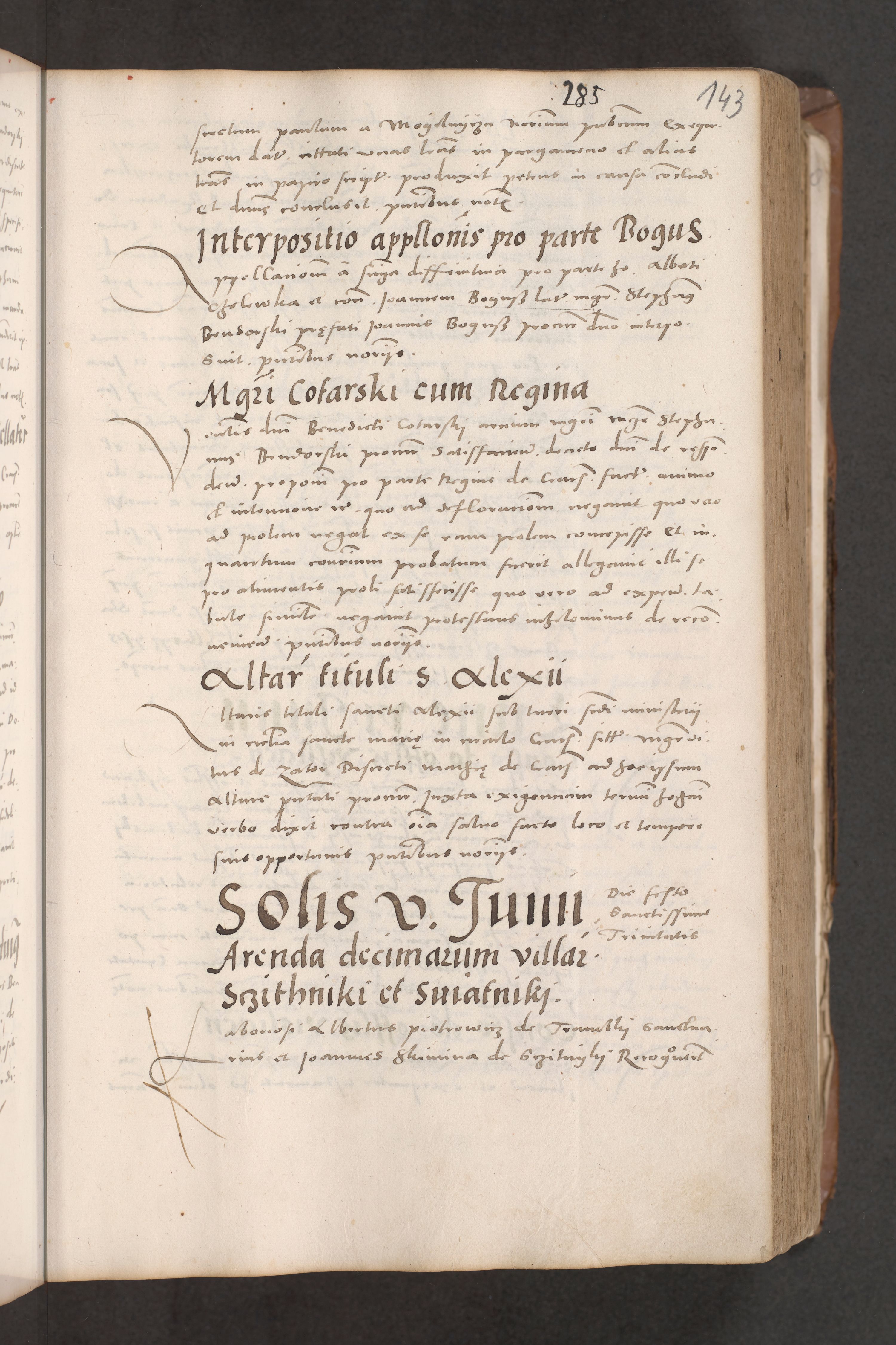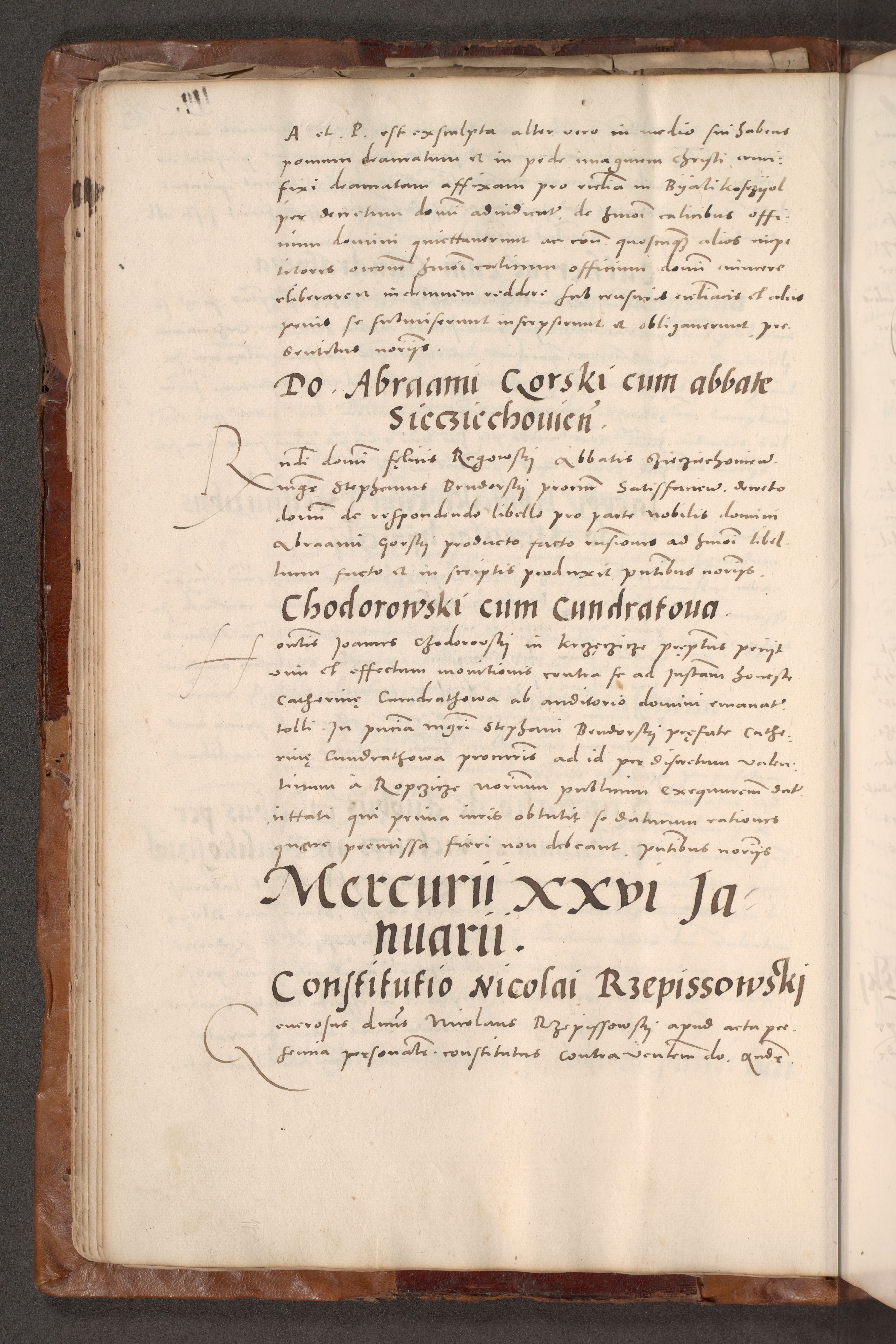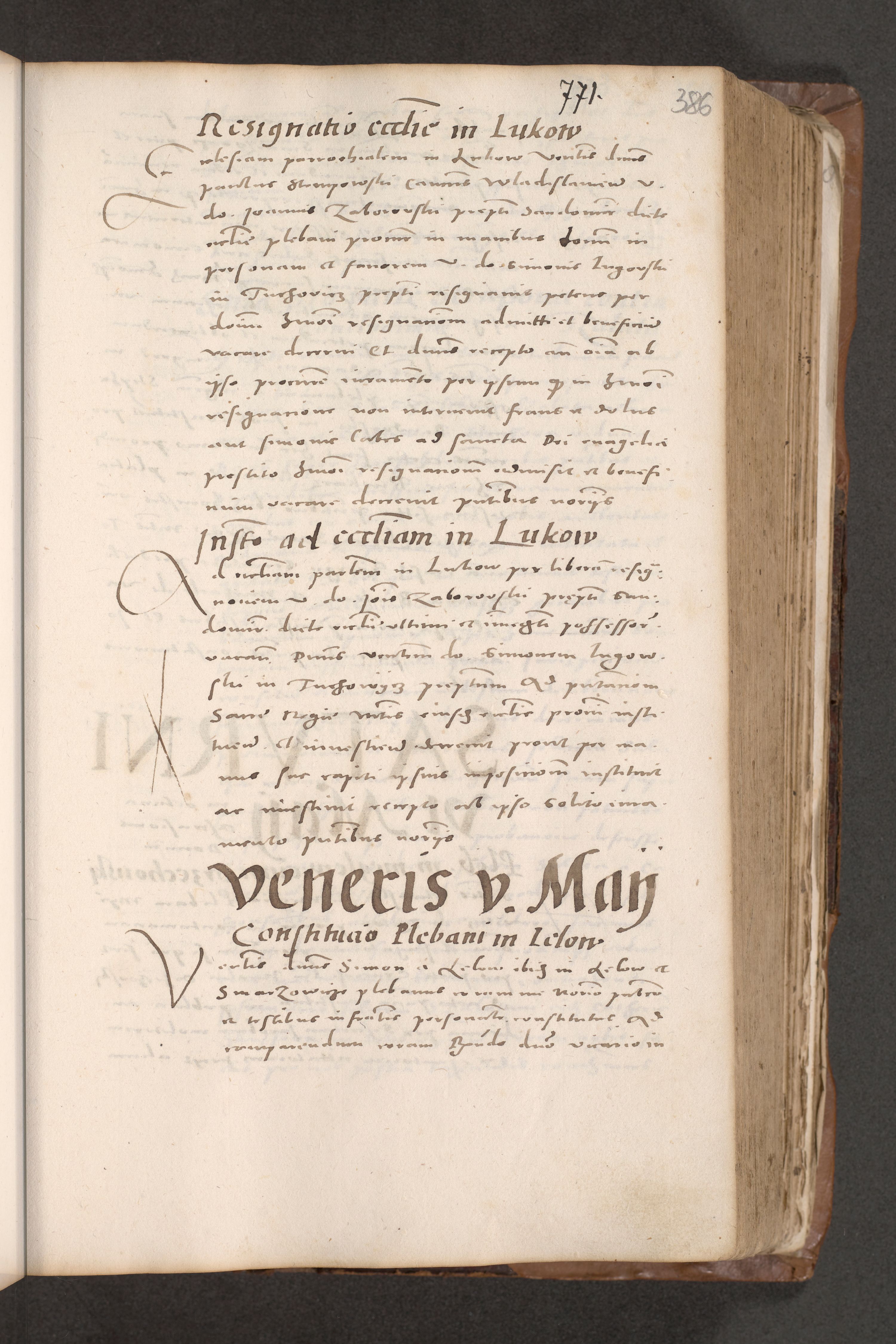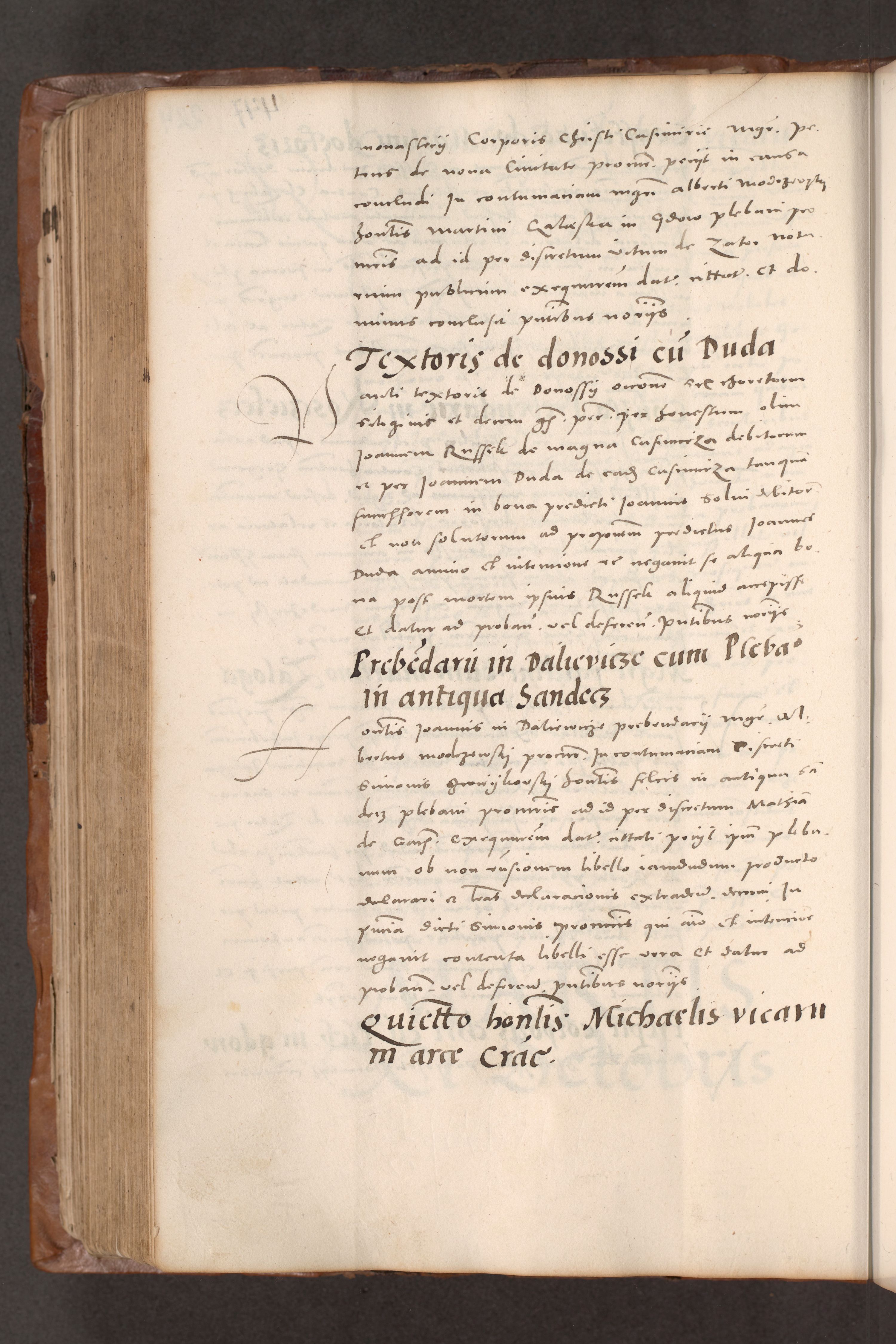 Acta actorum causarum, sententiarum tam diffinivarum quam interloquutoriarum, decretorum, obligationum, quietationum et constitutionum procuratorum coram reverendo domino Stanislao Szlomowski praeposito Calissieensi, archidiacono Sandecensi, canonico vicarioque in spiritualibus generali Cracoviensi ad annum Domini millesimum quingentesimum quinquagesimum octavum, cuius indicio prima, pontificatus sanctissimi domini nostri Pauli divina providencia pape quarti, anno illius tercio, feliciter sequuntur.