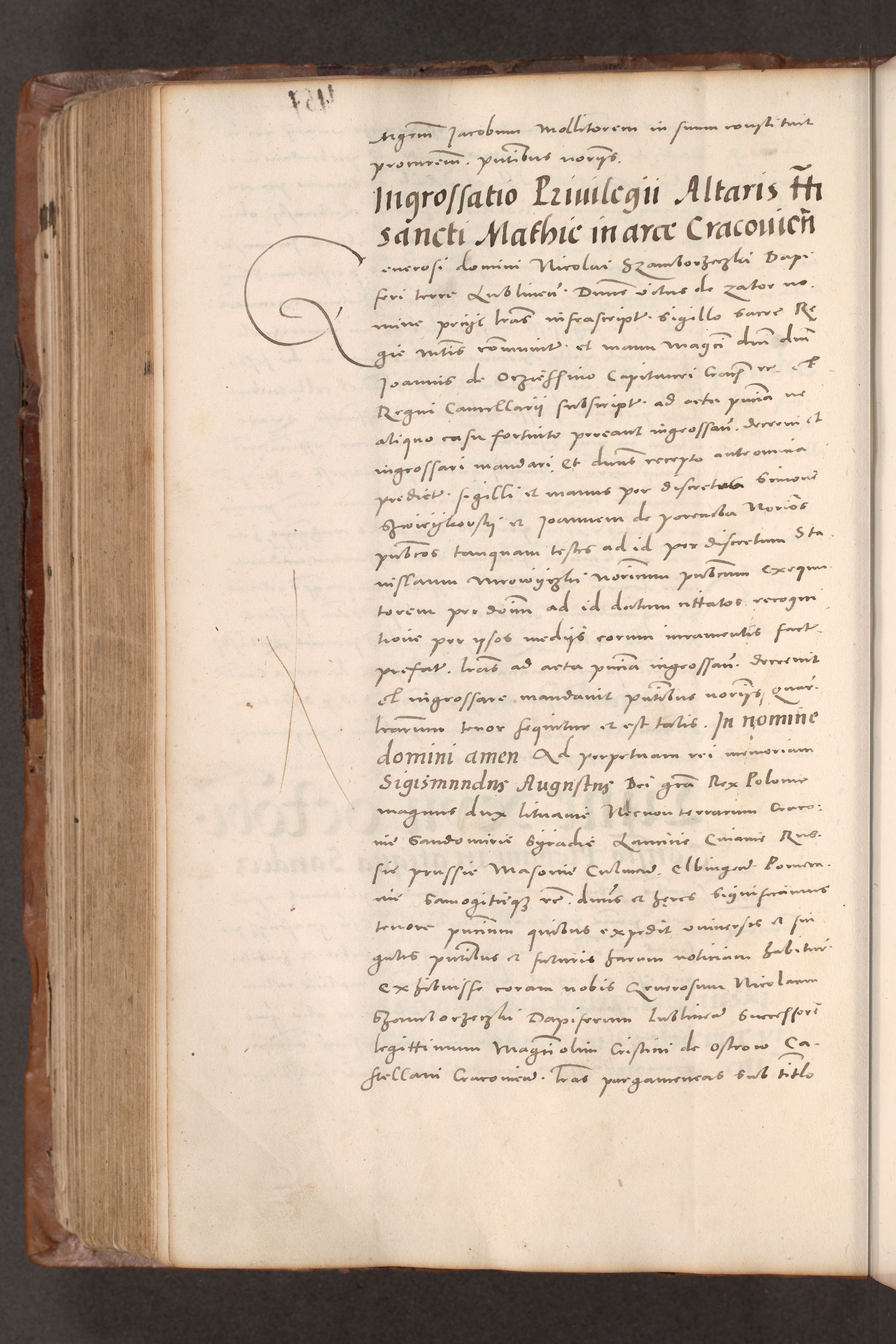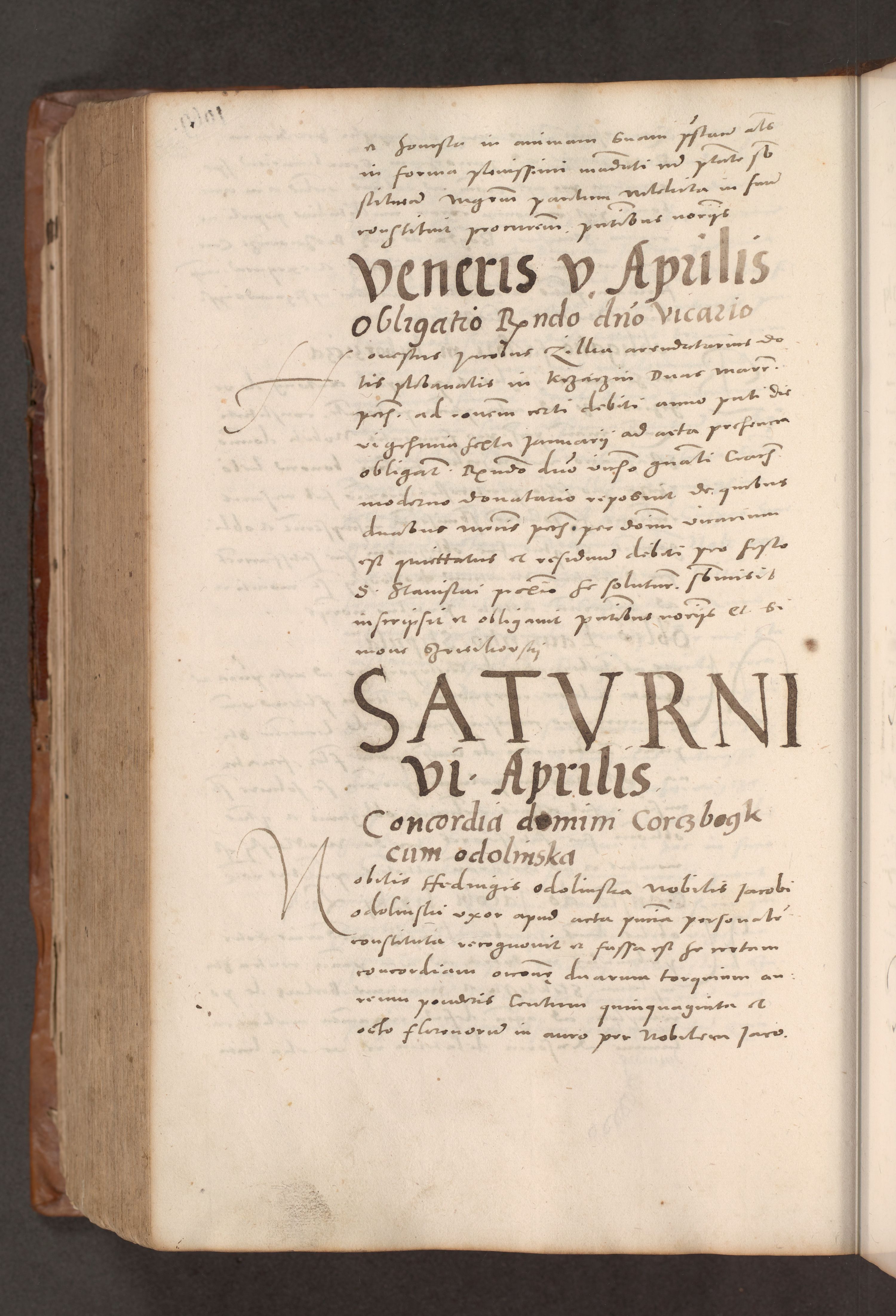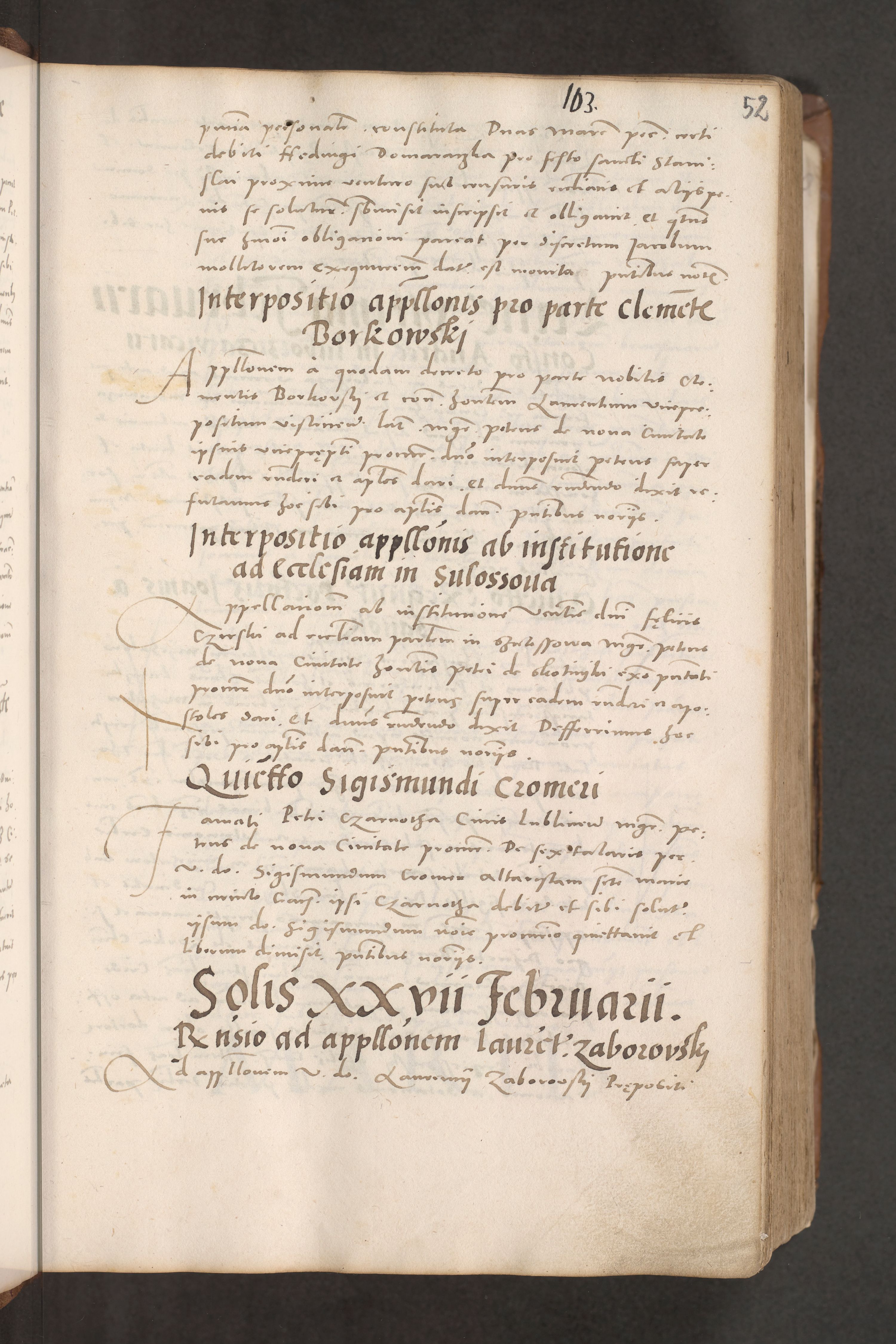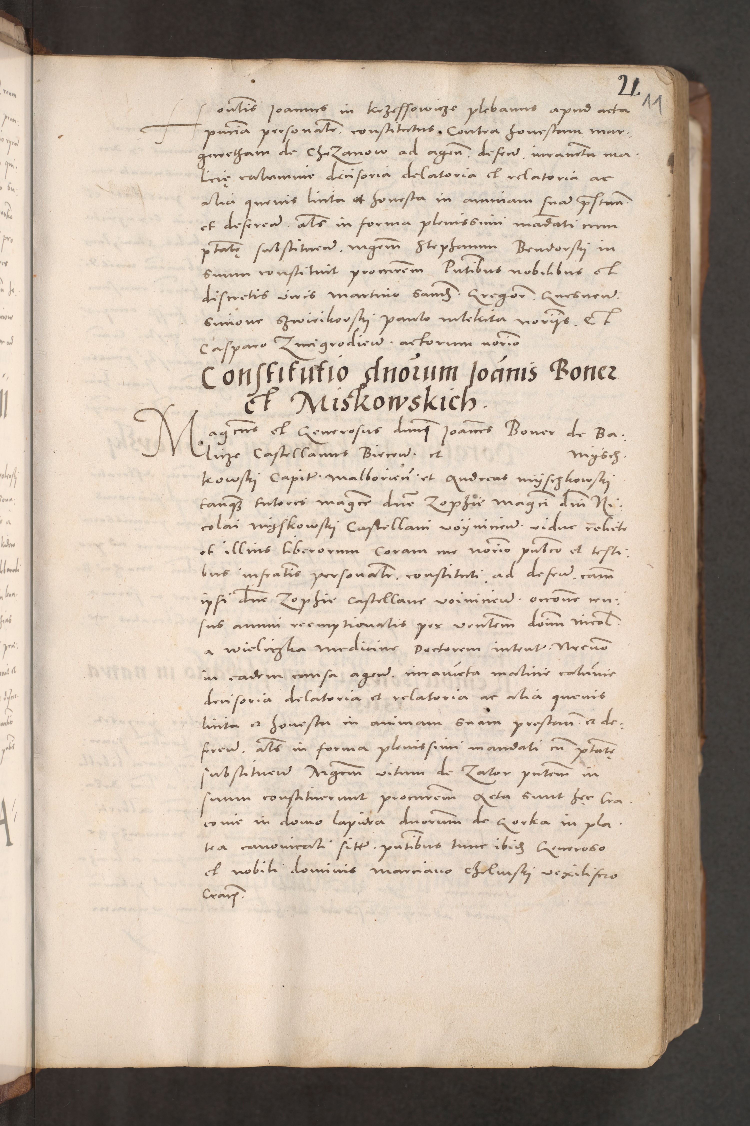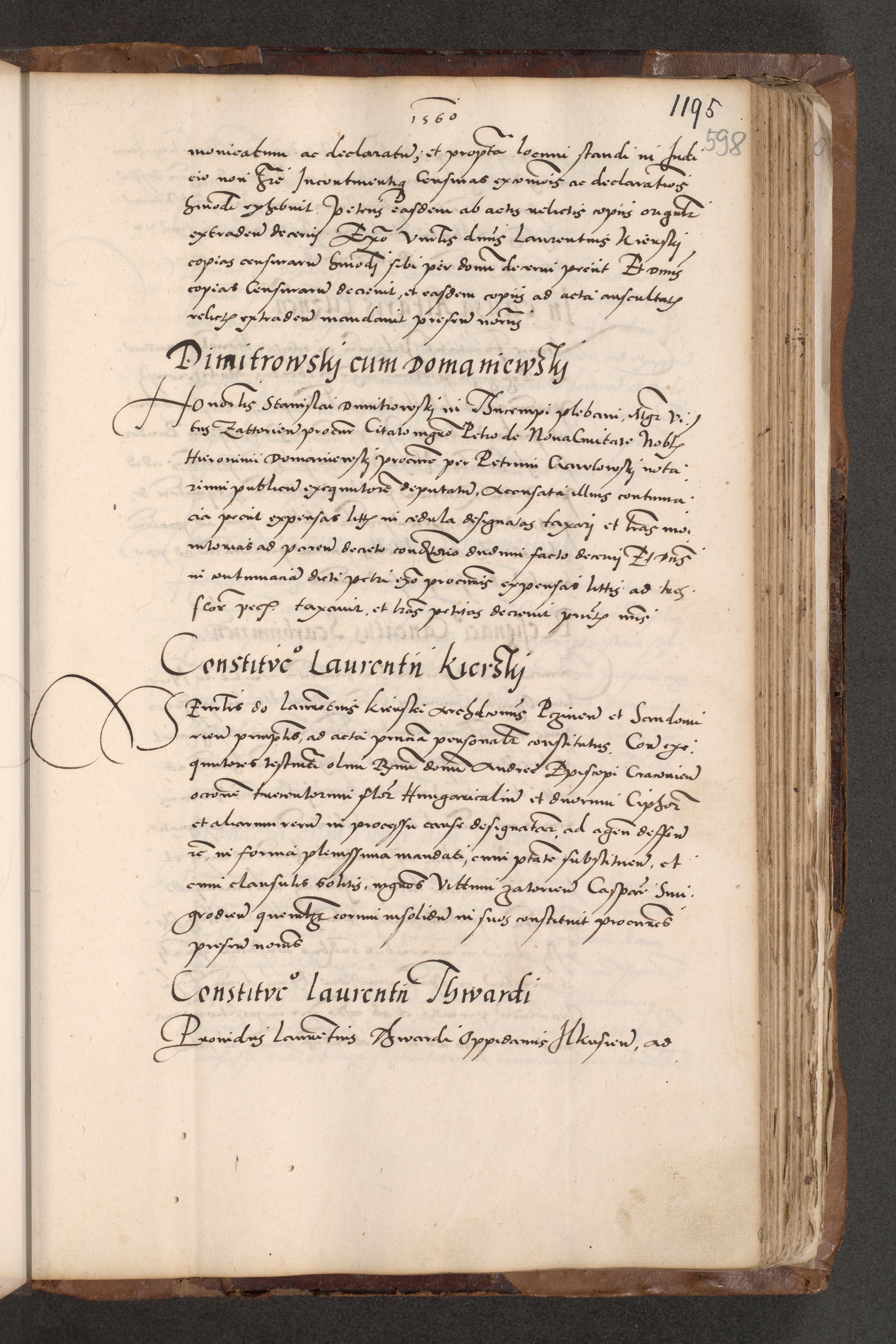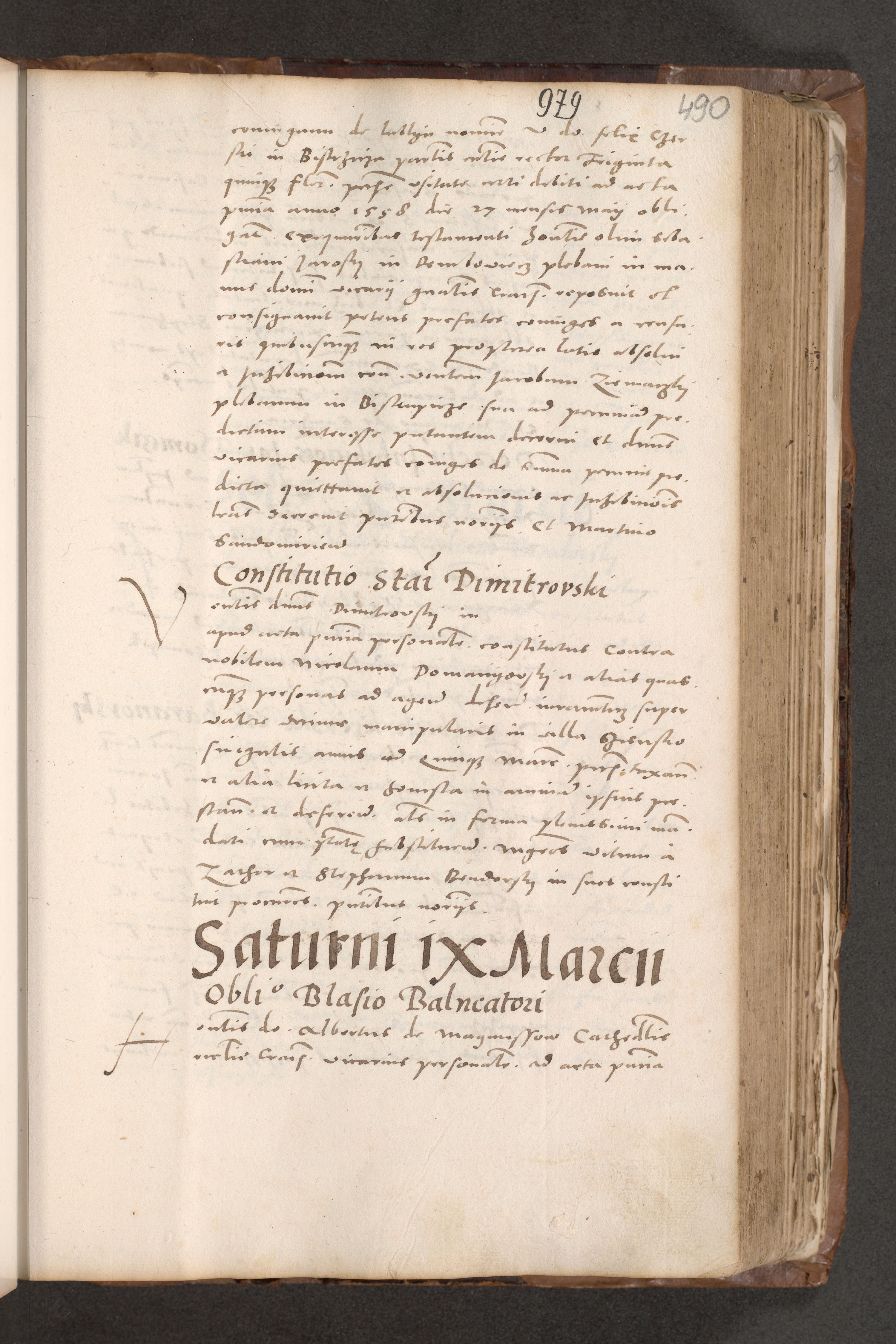 Acta actorum causarum, sententiarum tam diffinivarum quam interloquutoriarum, decretorum, obligationum, quietationum et constitutionum procuratorum coram reverendo domino Stanislao Szlomowski praeposito Calissieensi, archidiacono Sandecensi, canonico vicarioque in spiritualibus generali Cracoviensi ad annum Domini millesimum quingentesimum quinquagesimum octavum, cuius indicio prima, pontificatus sanctissimi domini nostri Pauli divina providencia pape quarti, anno illius tercio, feliciter sequuntur.