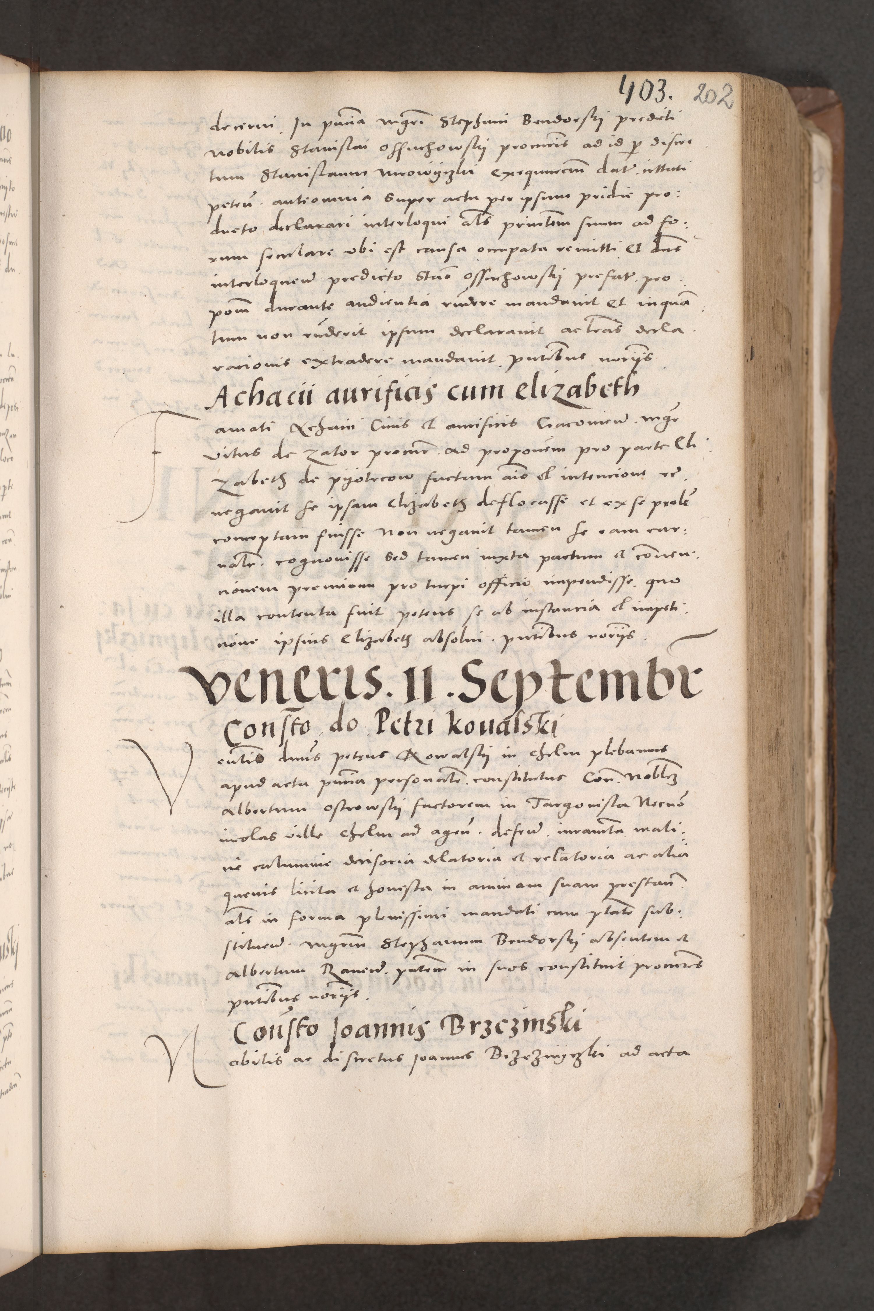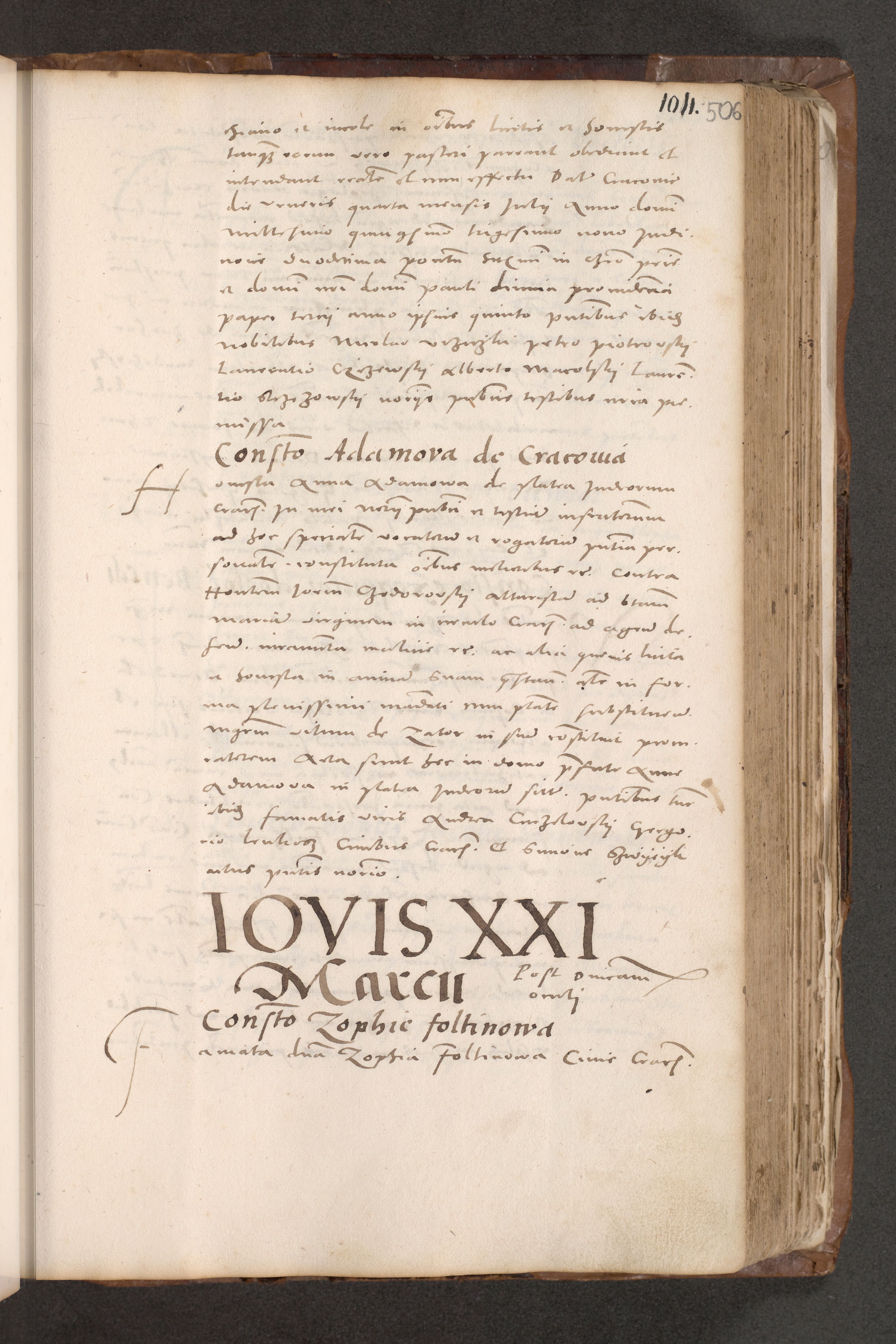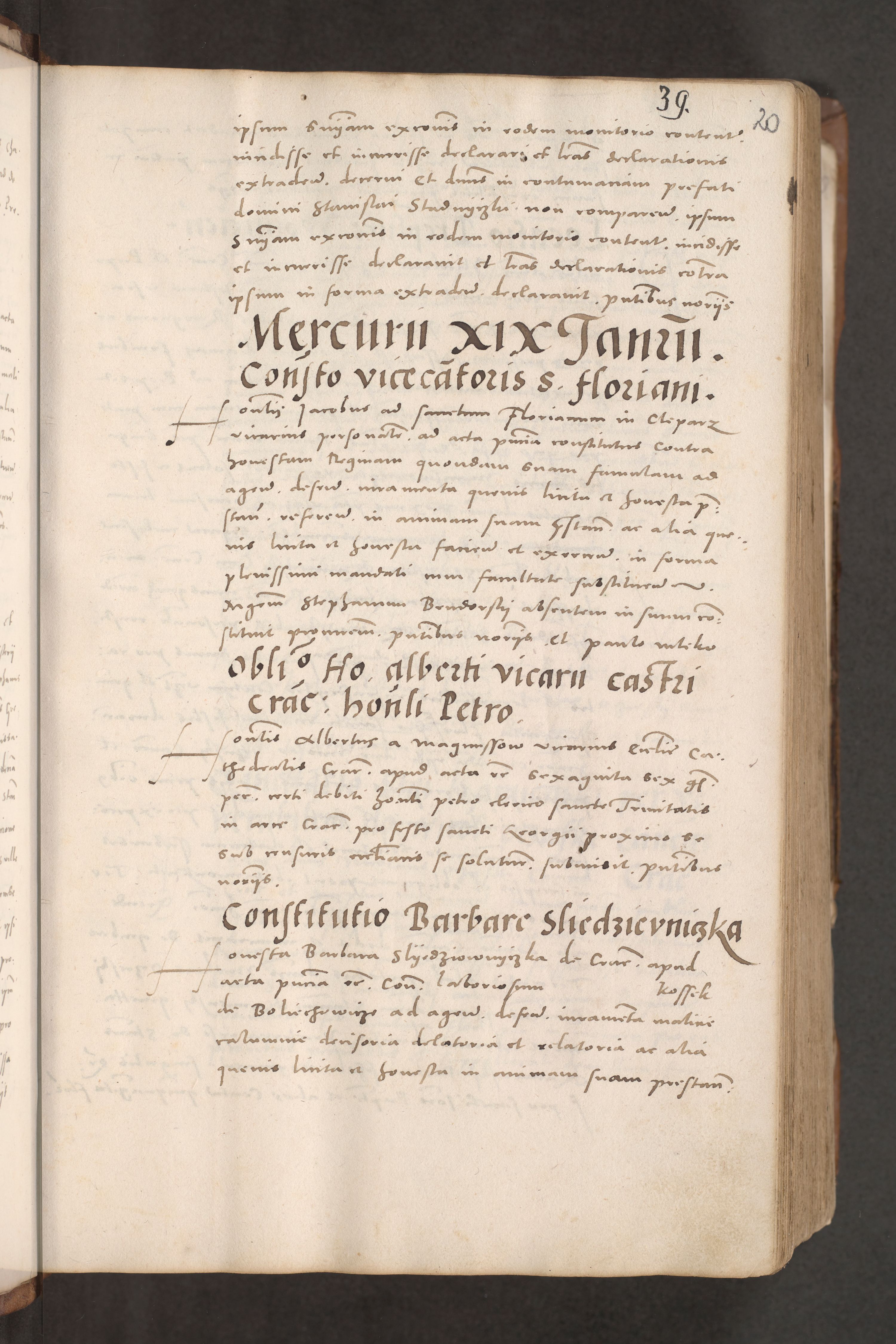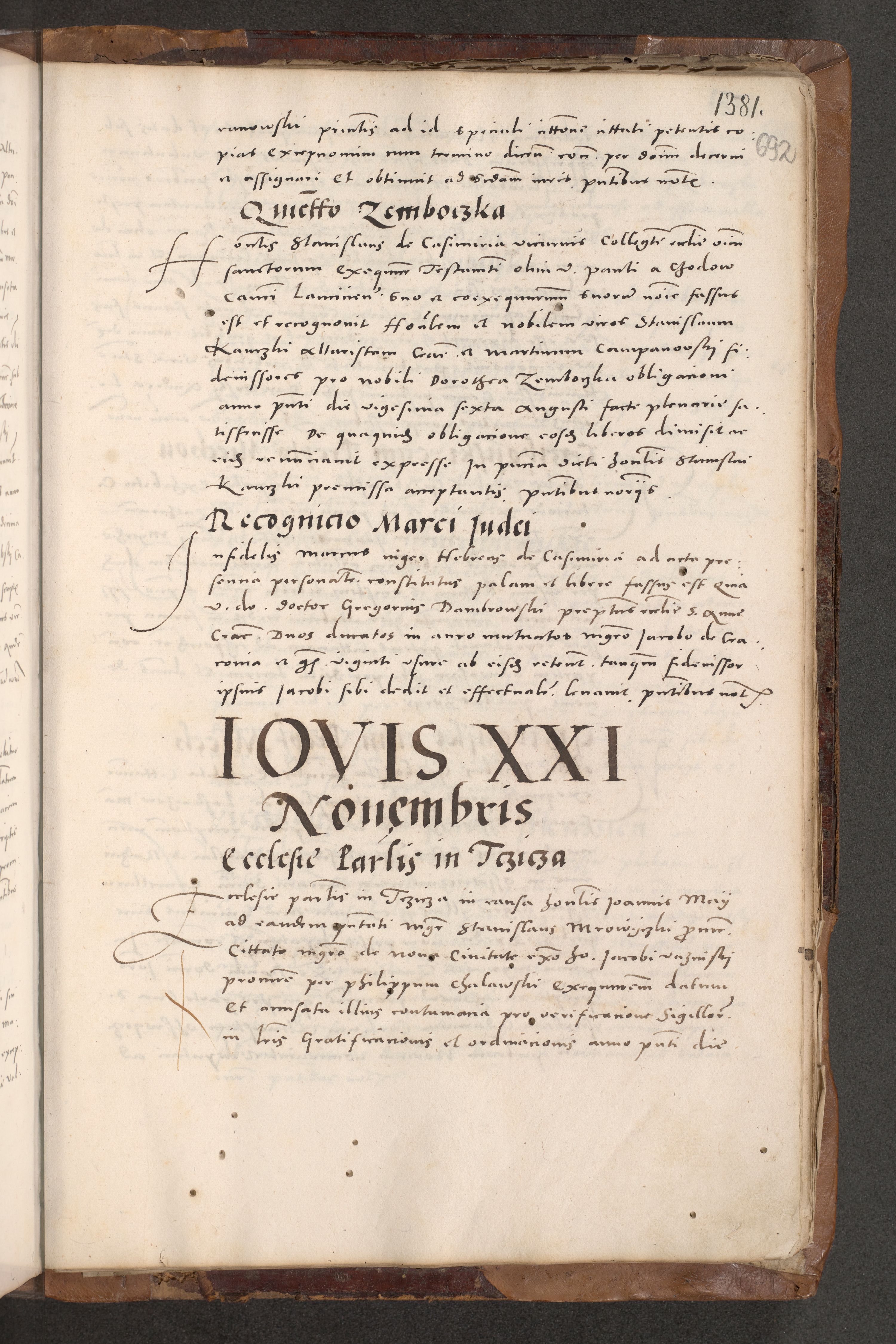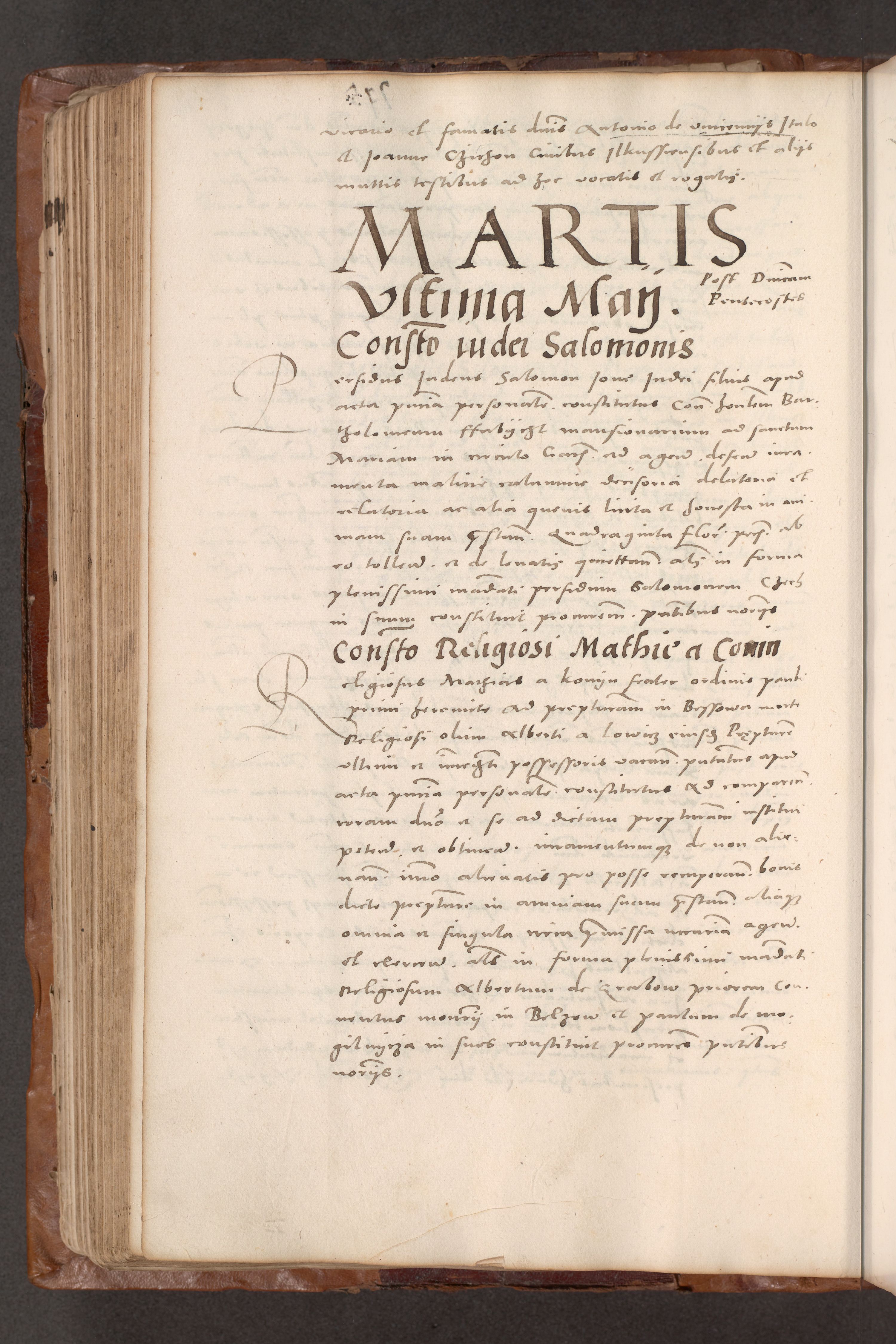 Acta actorum causarum, sententiarum tam diffinivarum quam interloquutoriarum, decretorum, obligationum, quietationum et constitutionum procuratorum coram reverendo domino Stanislao Szlomowski praeposito Calissieensi, archidiacono Sandecensi, canonico vicarioque in spiritualibus generali Cracoviensi ad annum Domini millesimum quingentesimum quinquagesimum octavum, cuius indicio prima, pontificatus sanctissimi domini nostri Pauli divina providencia pape quarti, anno illius tercio, feliciter sequuntur.