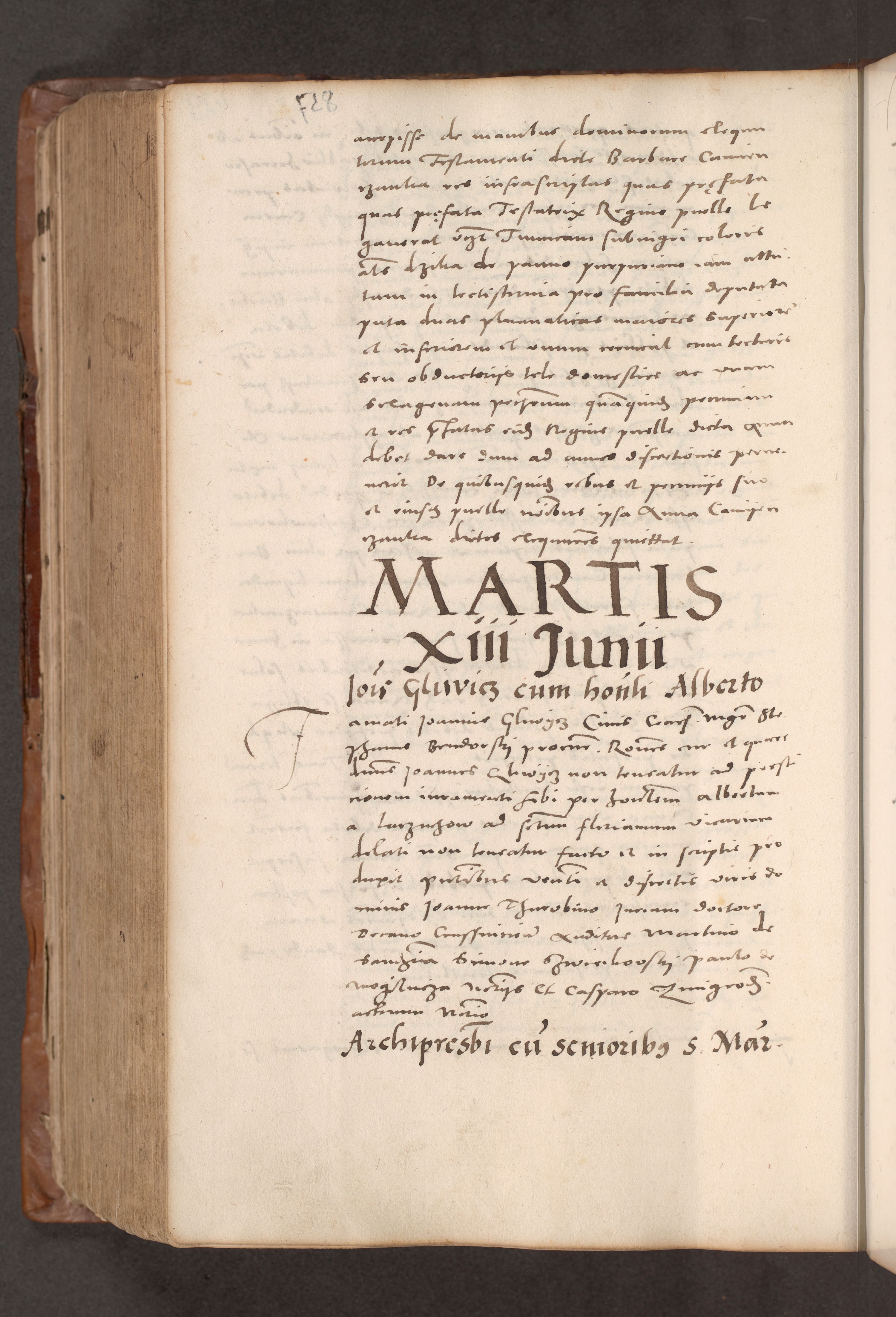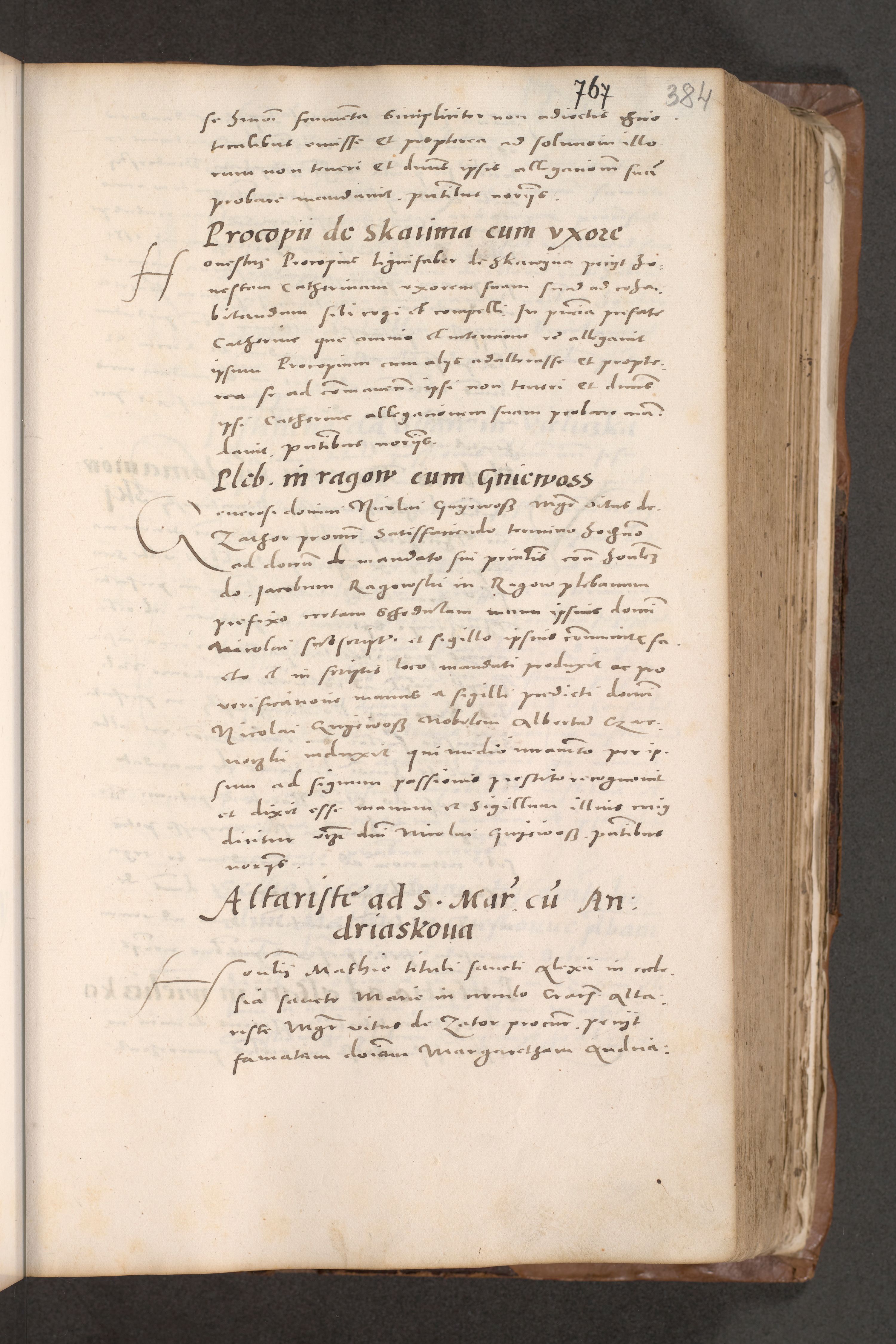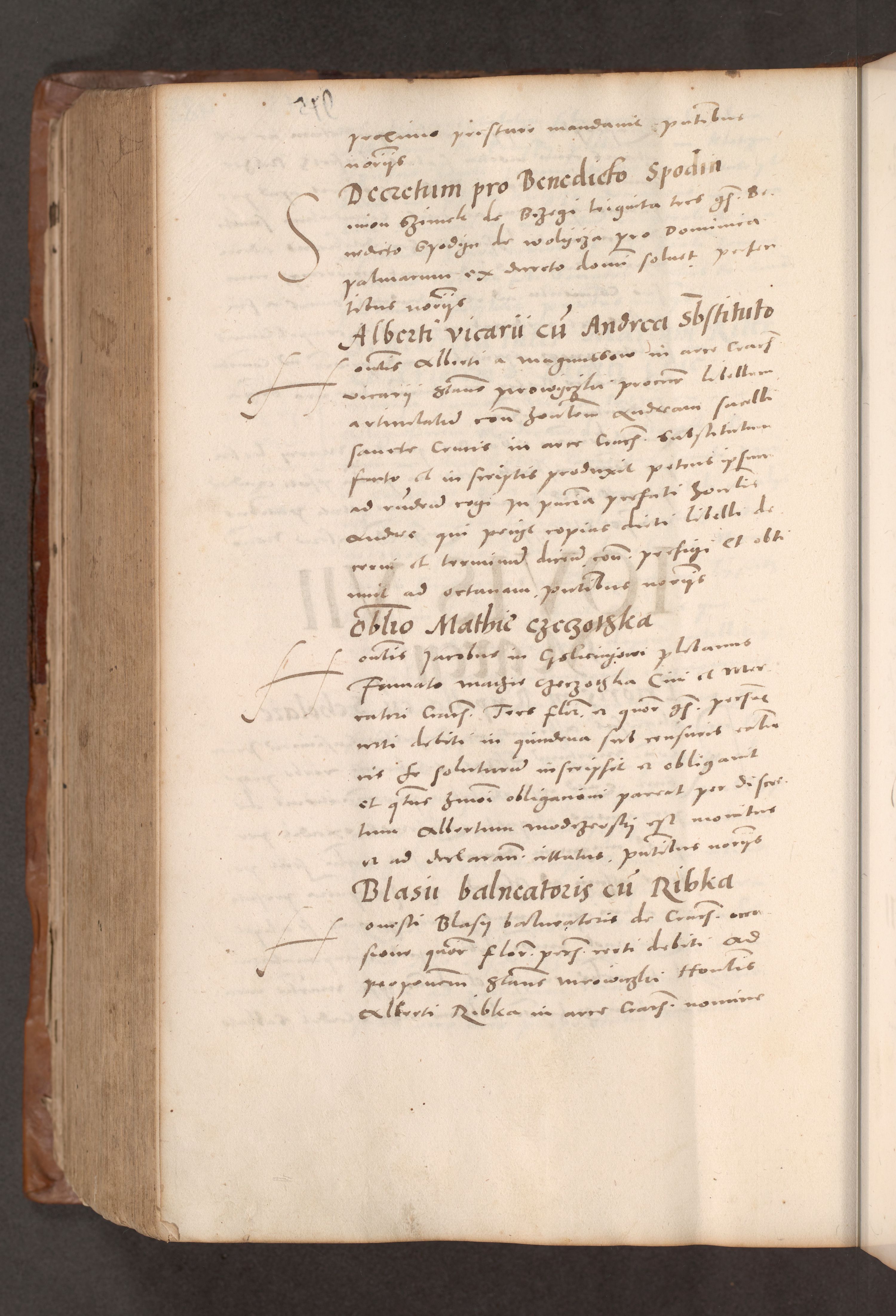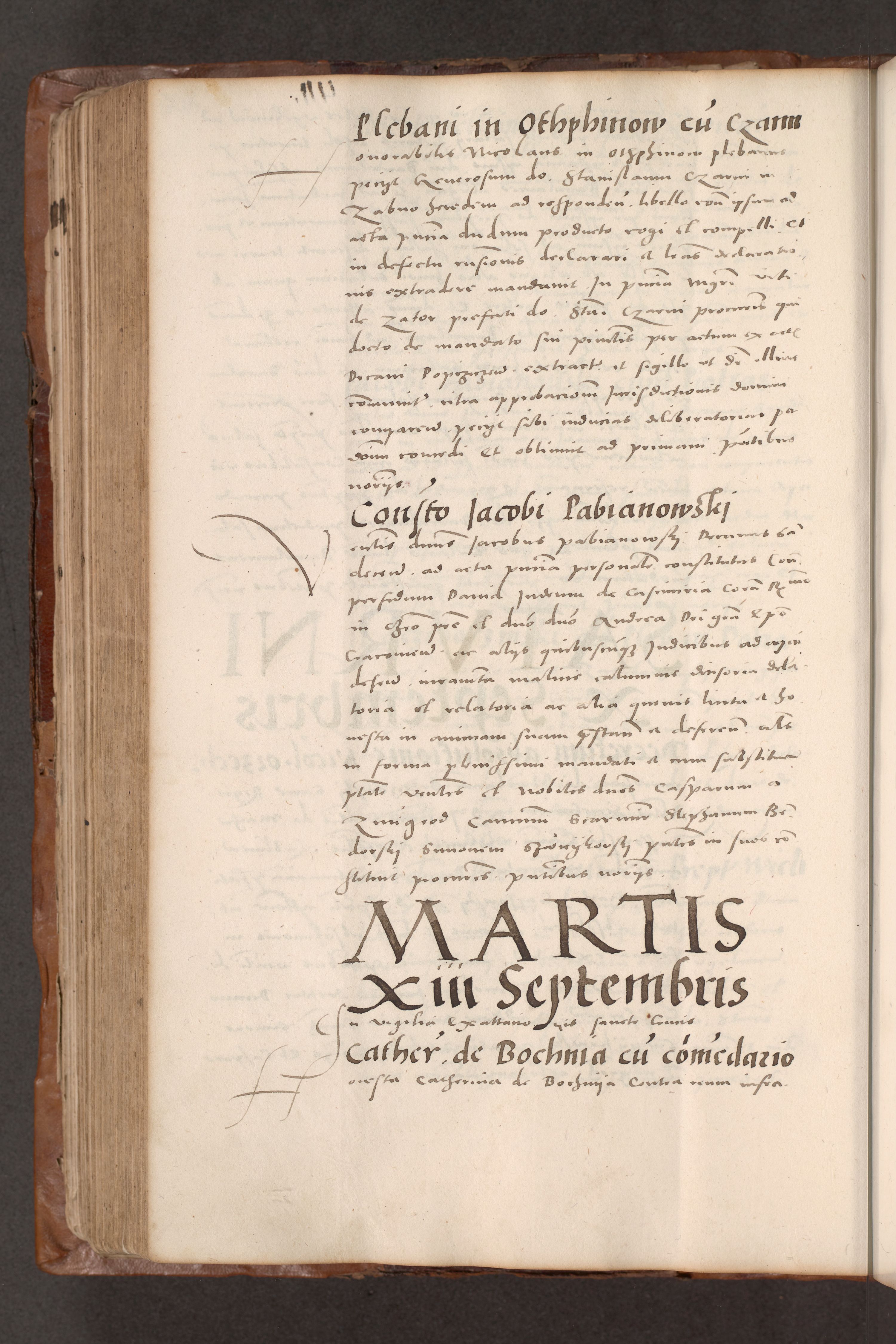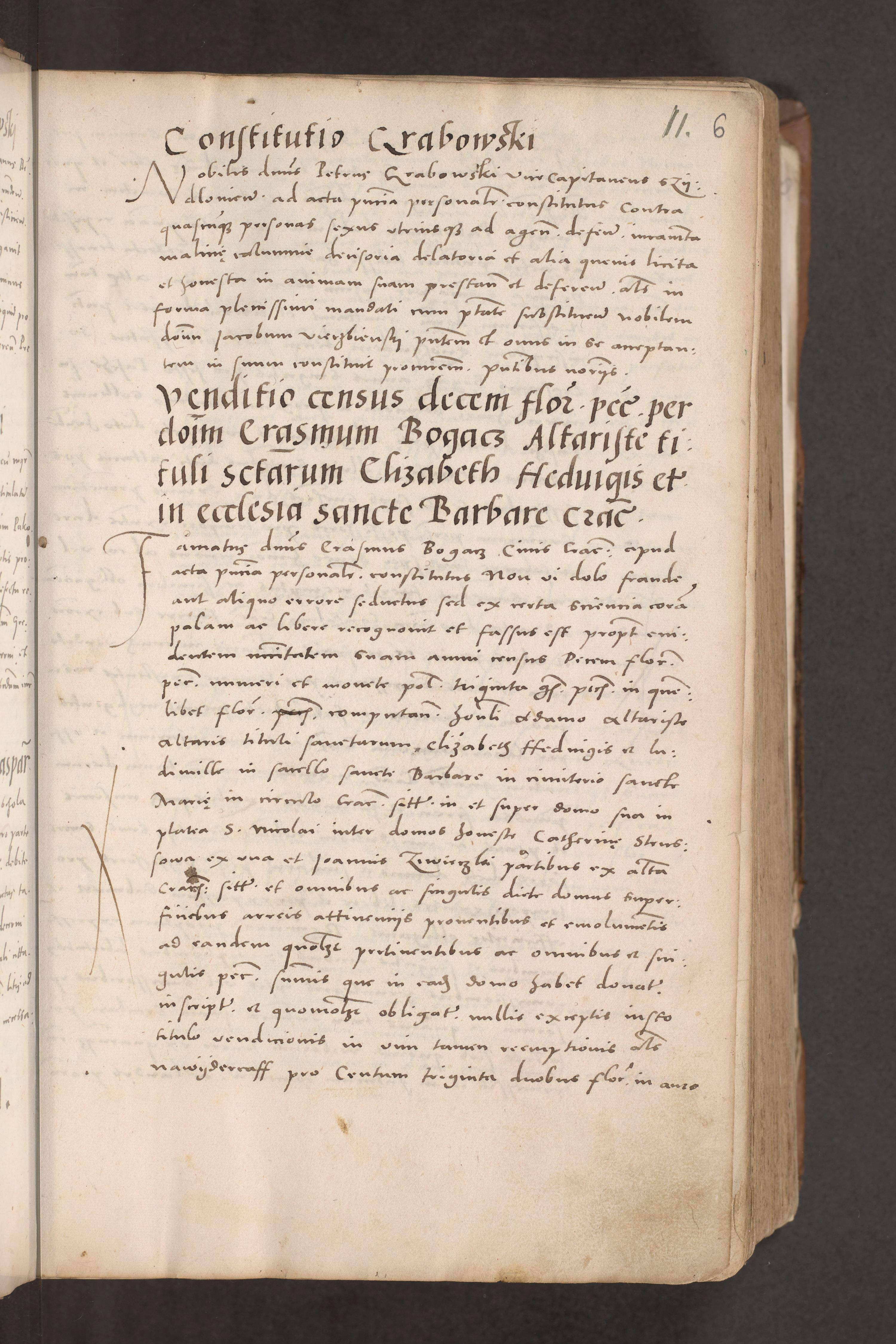 Acta actorum causarum, sententiarum tam diffinivarum quam interloquutoriarum, decretorum, obligationum, quietationum et constitutionum procuratorum coram reverendo domino Stanislao Szlomowski praeposito Calissieensi, archidiacono Sandecensi, canonico vicarioque in spiritualibus generali Cracoviensi ad annum Domini millesimum quingentesimum quinquagesimum octavum, cuius indicio prima, pontificatus sanctissimi domini nostri Pauli divina providencia pape quarti, anno illius tercio, feliciter sequuntur.