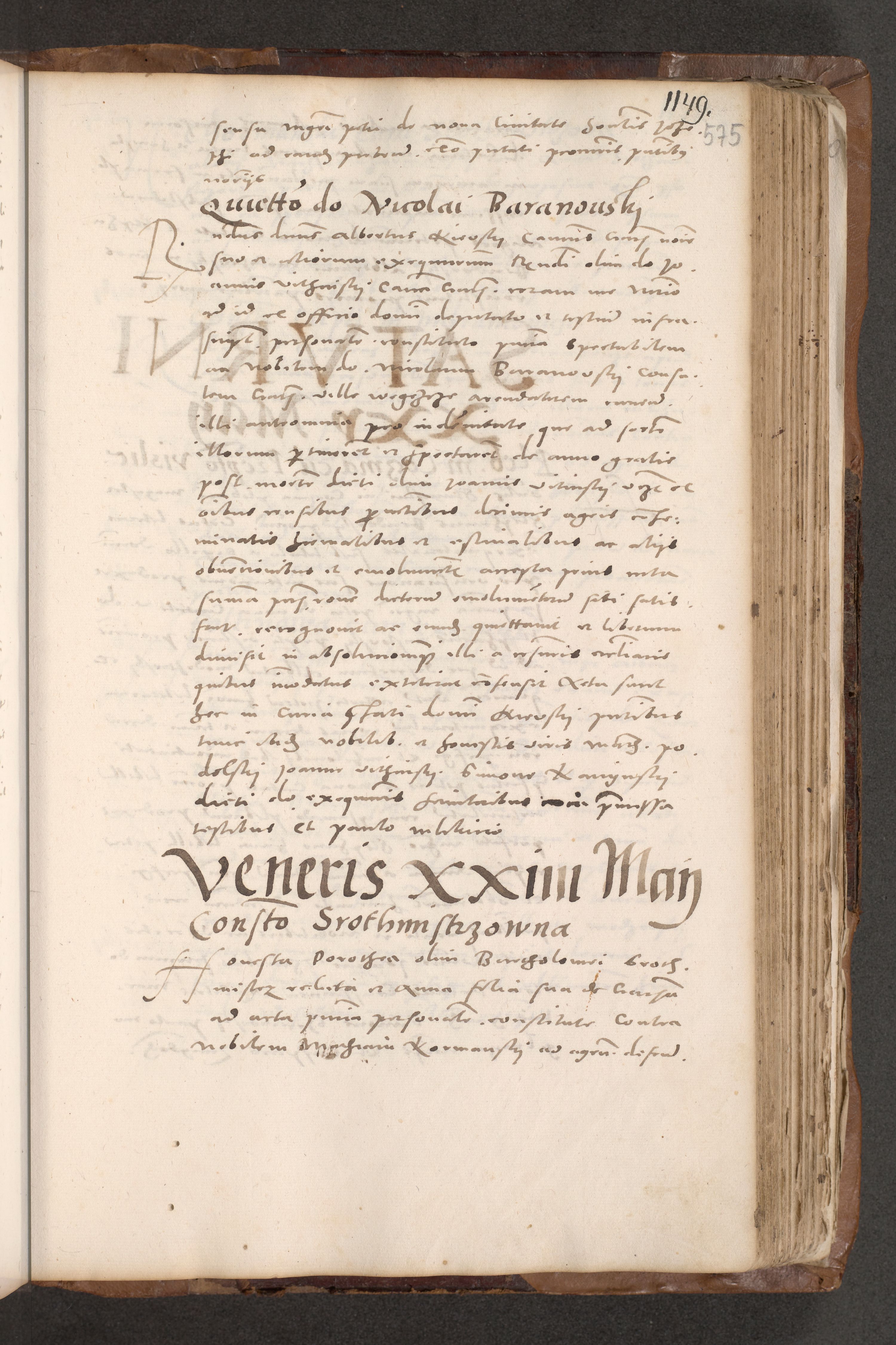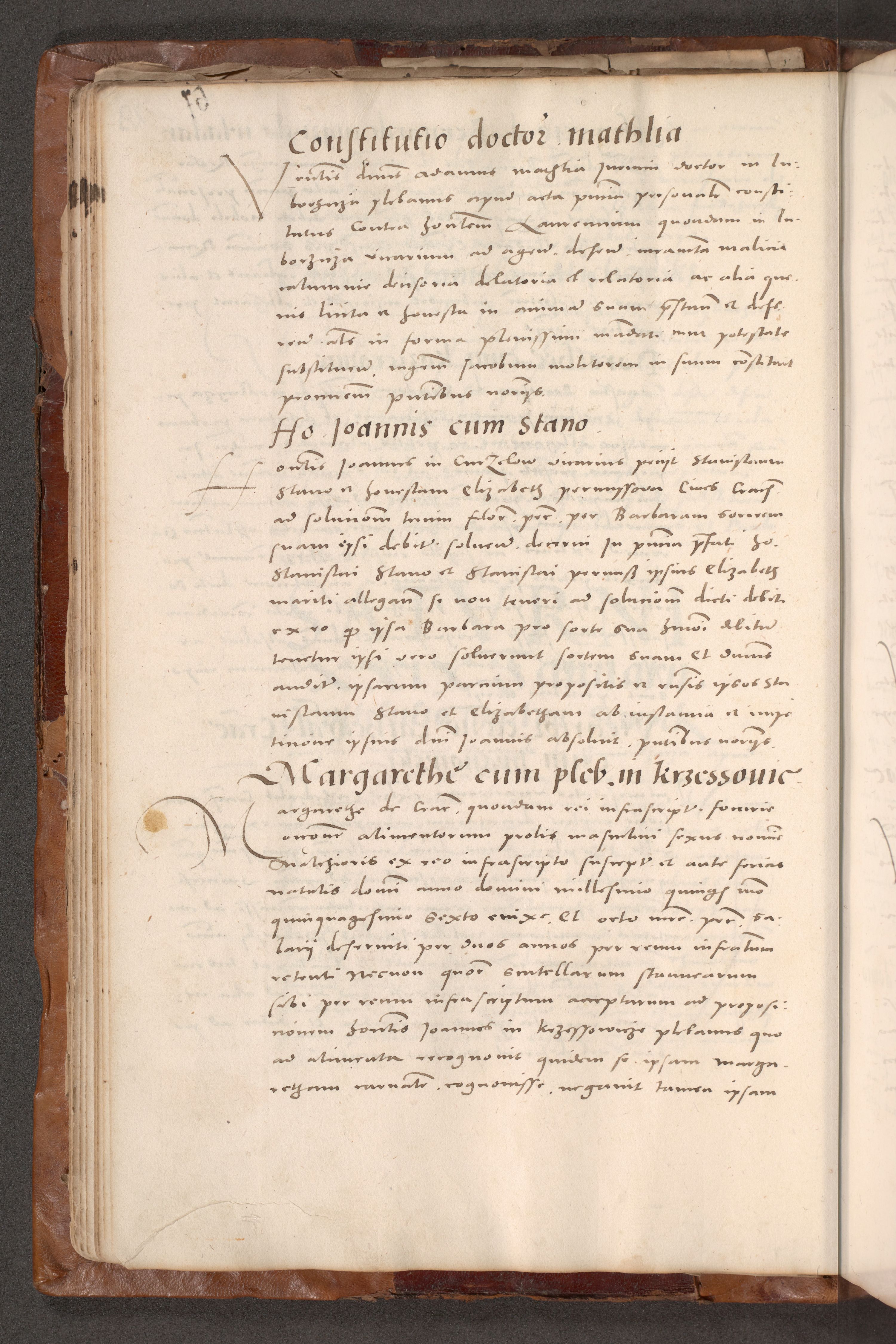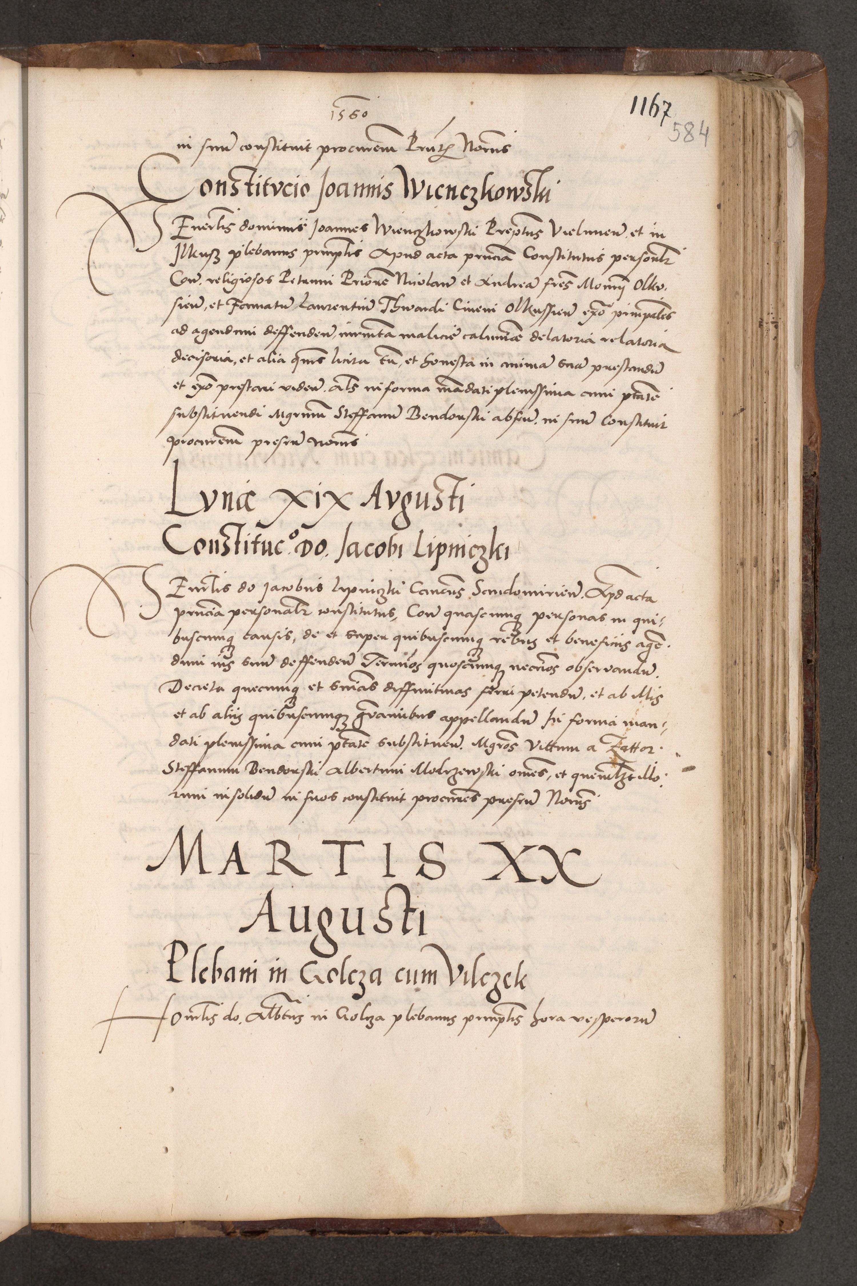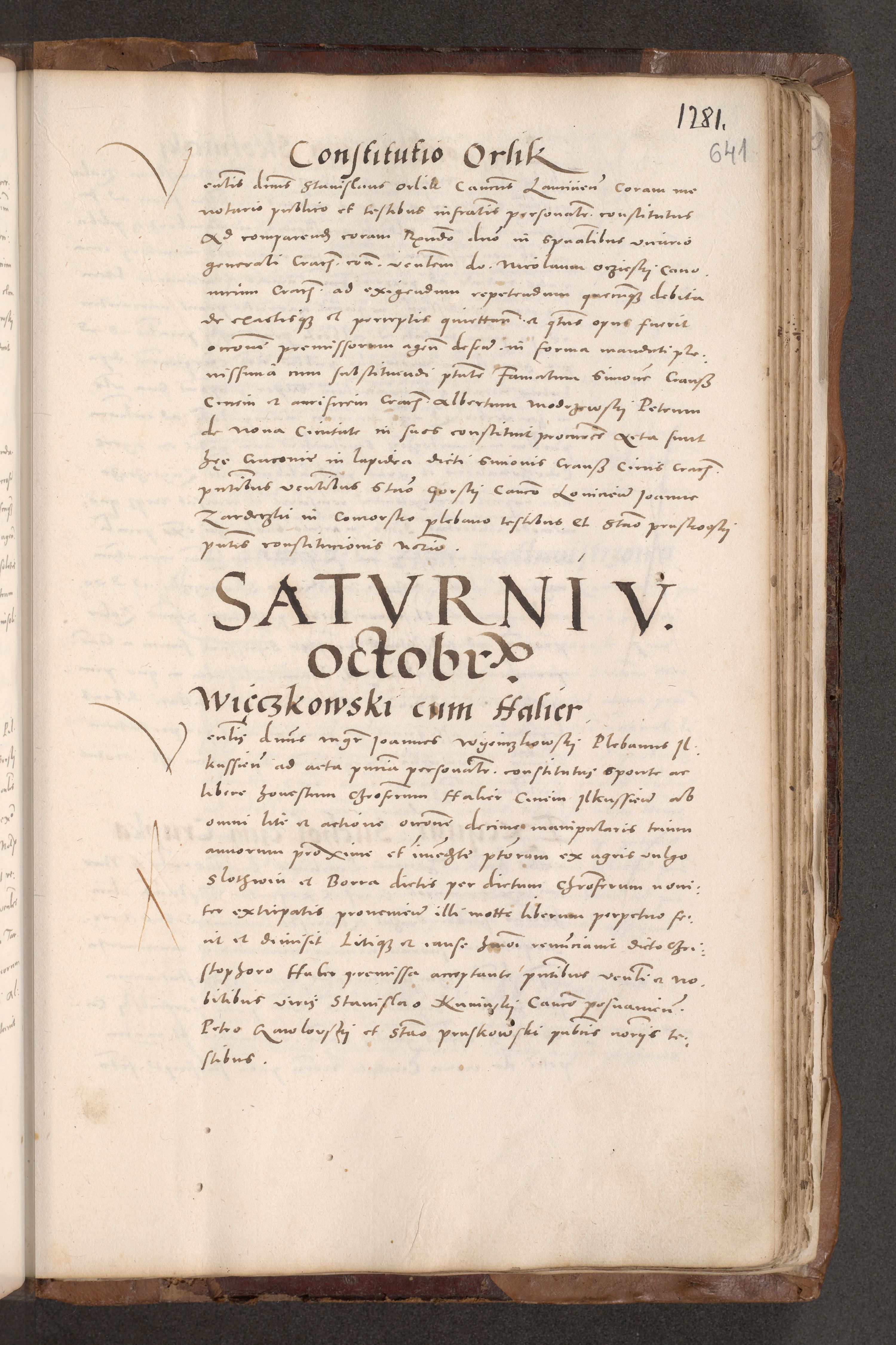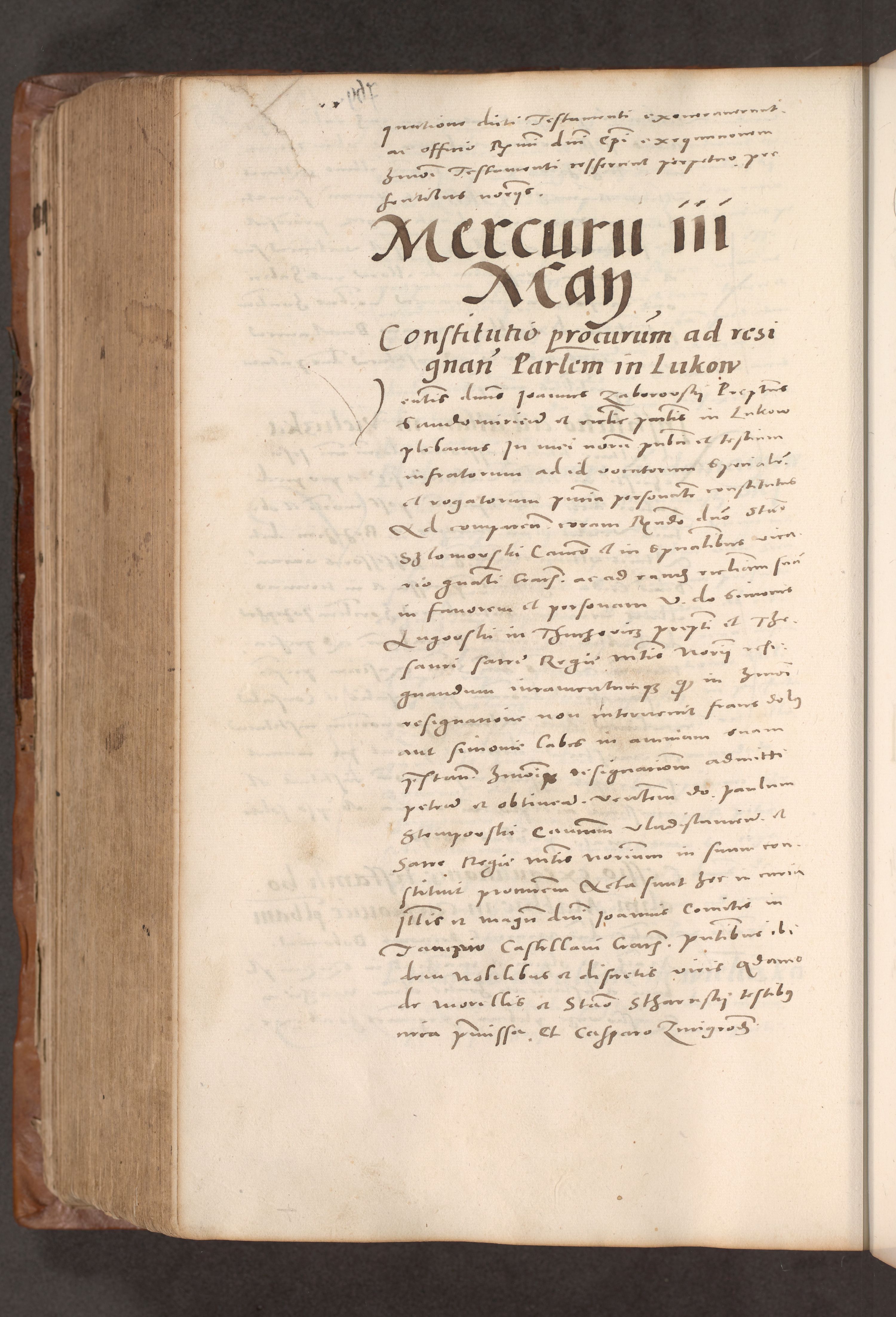 Acta actorum causarum, sententiarum tam diffinivarum quam interloquutoriarum, decretorum, obligationum, quietationum et constitutionum procuratorum coram reverendo domino Stanislao Szlomowski praeposito Calissieensi, archidiacono Sandecensi, canonico vicarioque in spiritualibus generali Cracoviensi ad annum Domini millesimum quingentesimum quinquagesimum octavum, cuius indicio prima, pontificatus sanctissimi domini nostri Pauli divina providencia pape quarti, anno illius tercio, feliciter sequuntur.