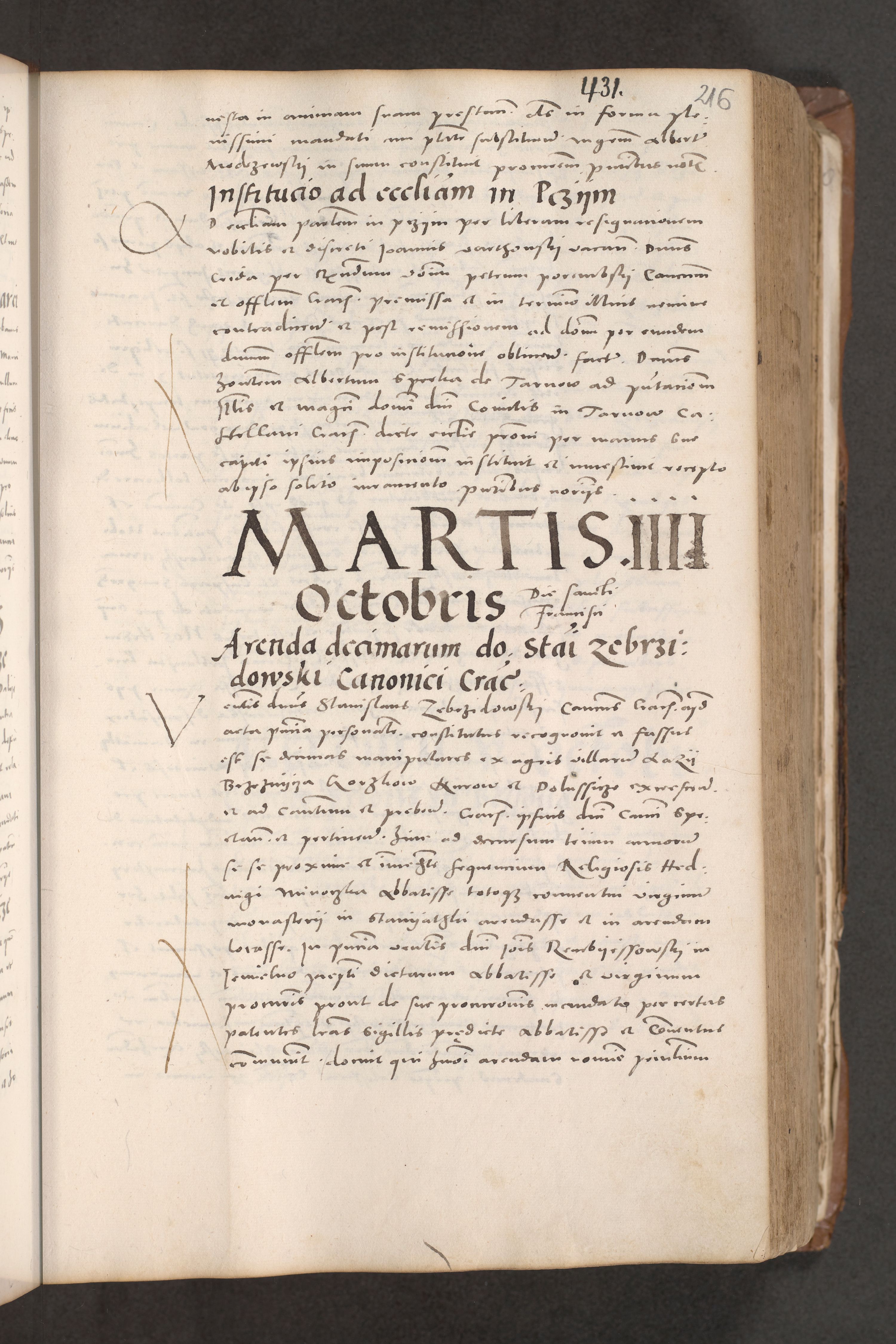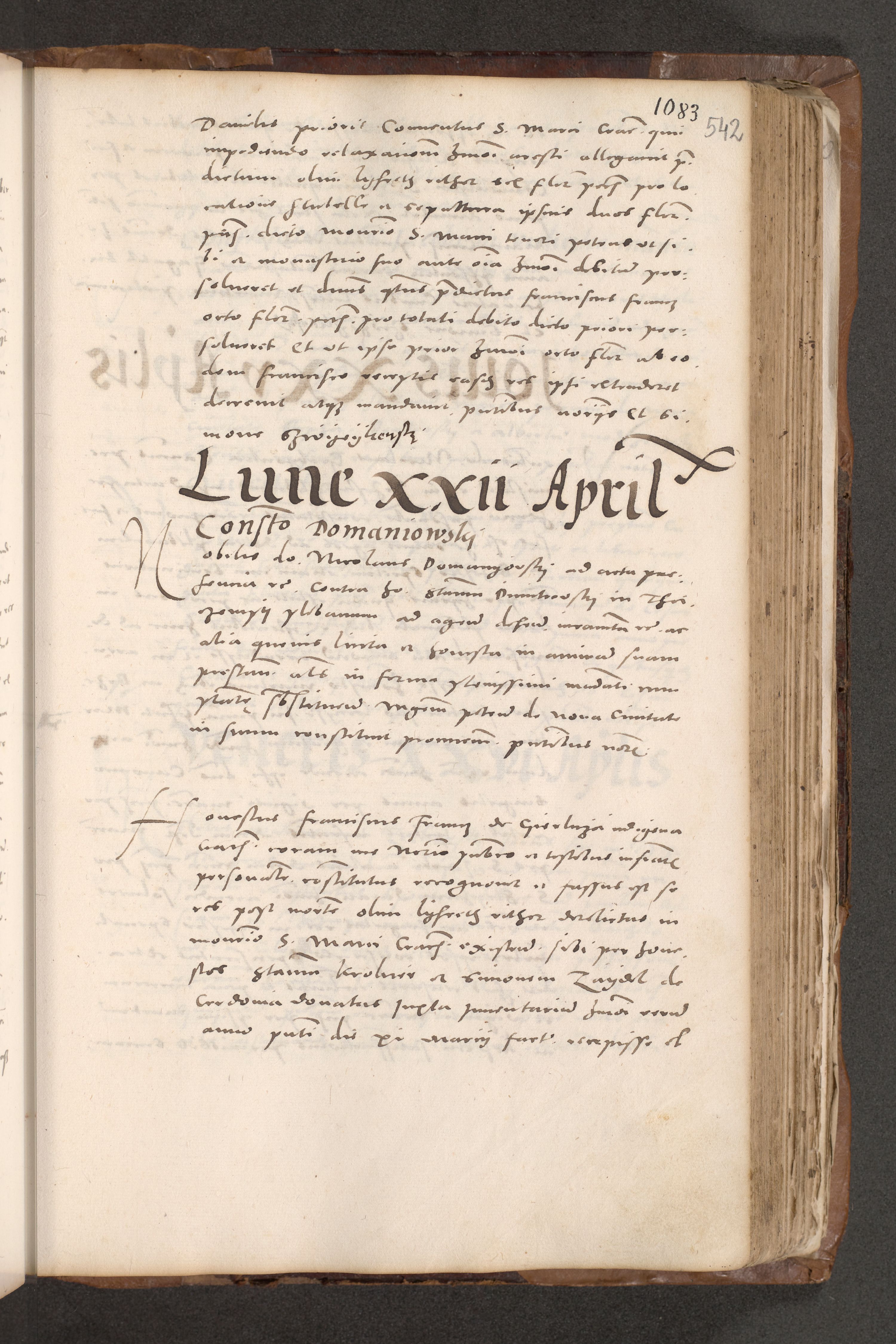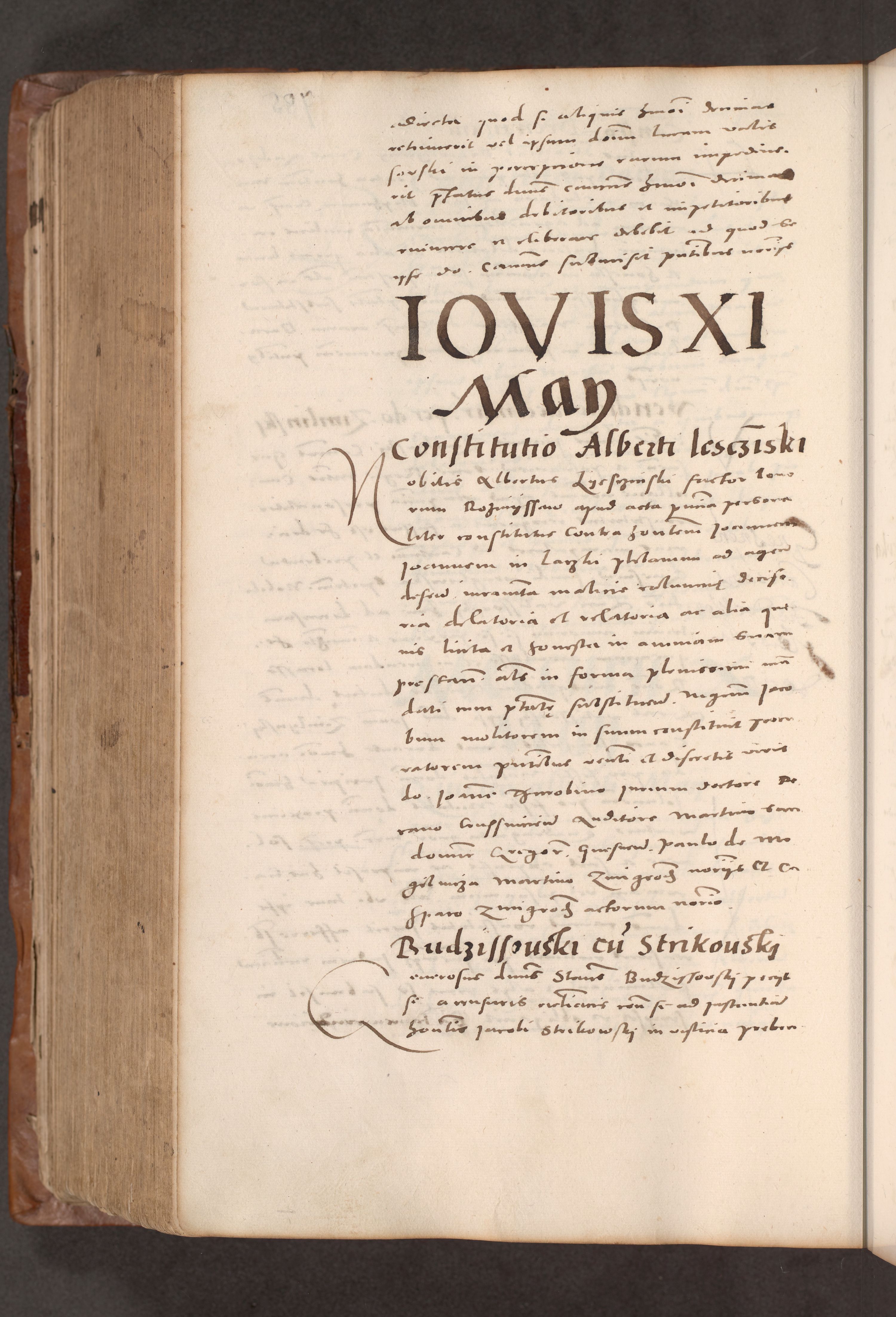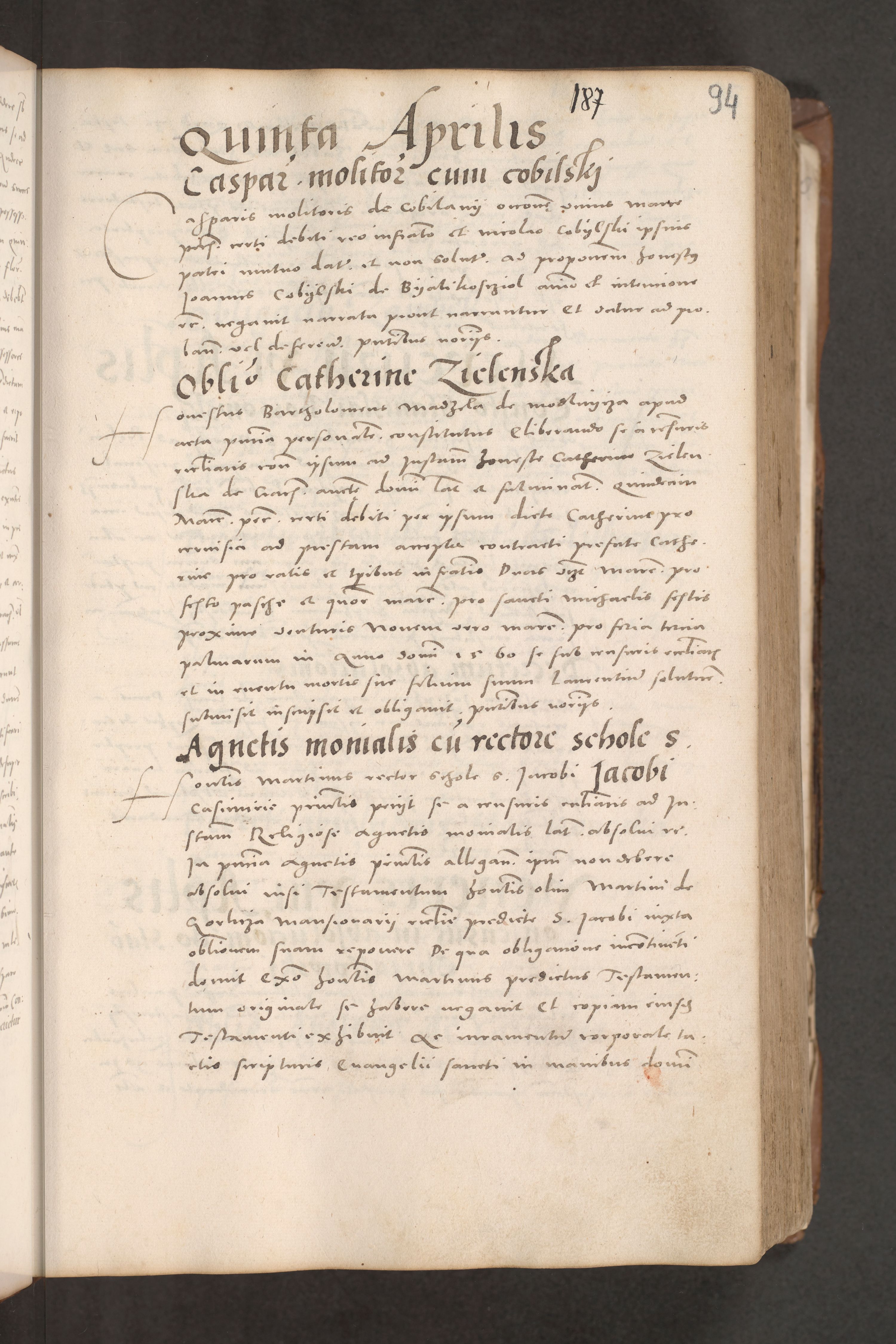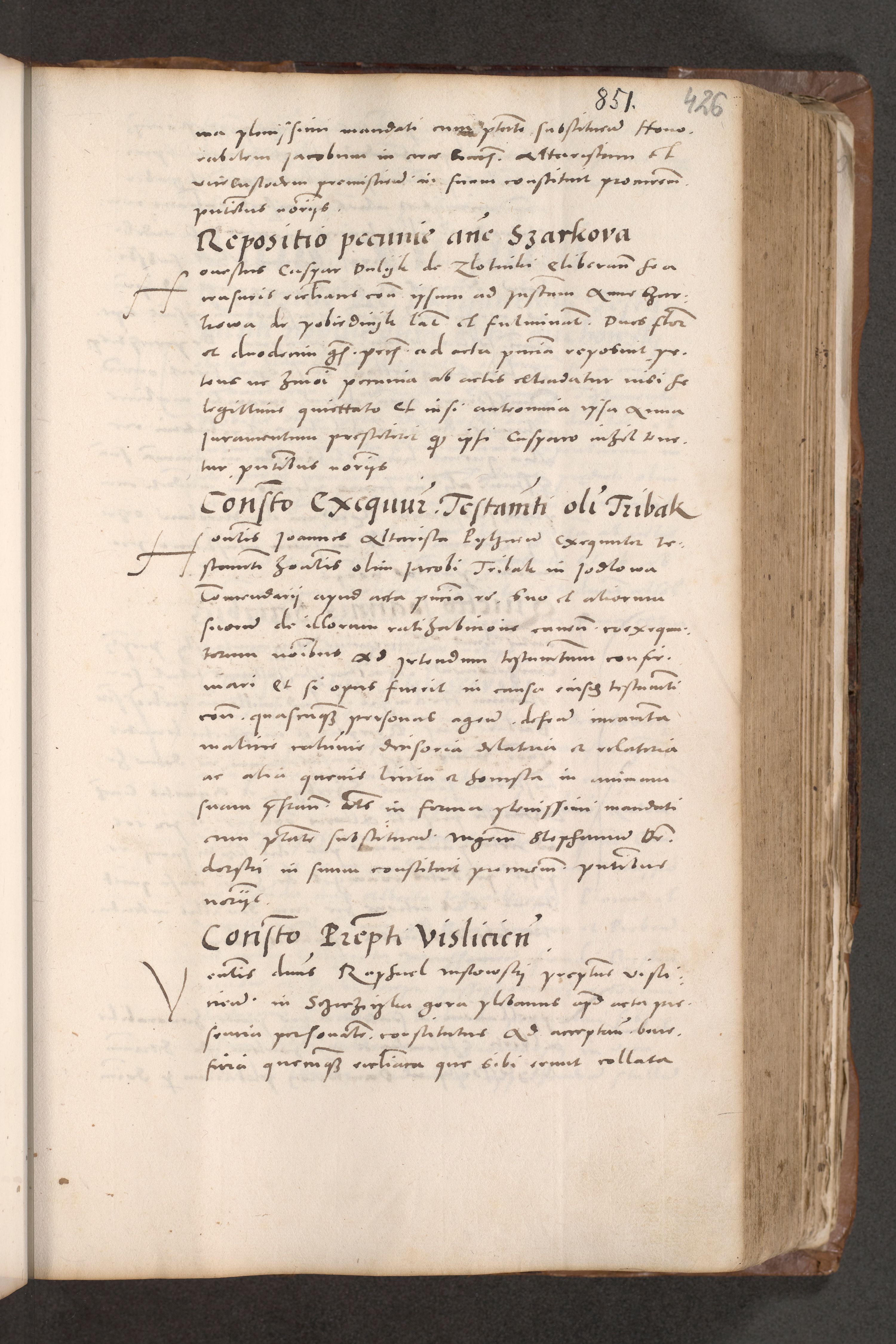 Acta actorum causarum, sententiarum tam diffinivarum quam interloquutoriarum, decretorum, obligationum, quietationum et constitutionum procuratorum coram reverendo domino Stanislao Szlomowski praeposito Calissieensi, archidiacono Sandecensi, canonico vicarioque in spiritualibus generali Cracoviensi ad annum Domini millesimum quingentesimum quinquagesimum octavum, cuius indicio prima, pontificatus sanctissimi domini nostri Pauli divina providencia pape quarti, anno illius tercio, feliciter sequuntur.