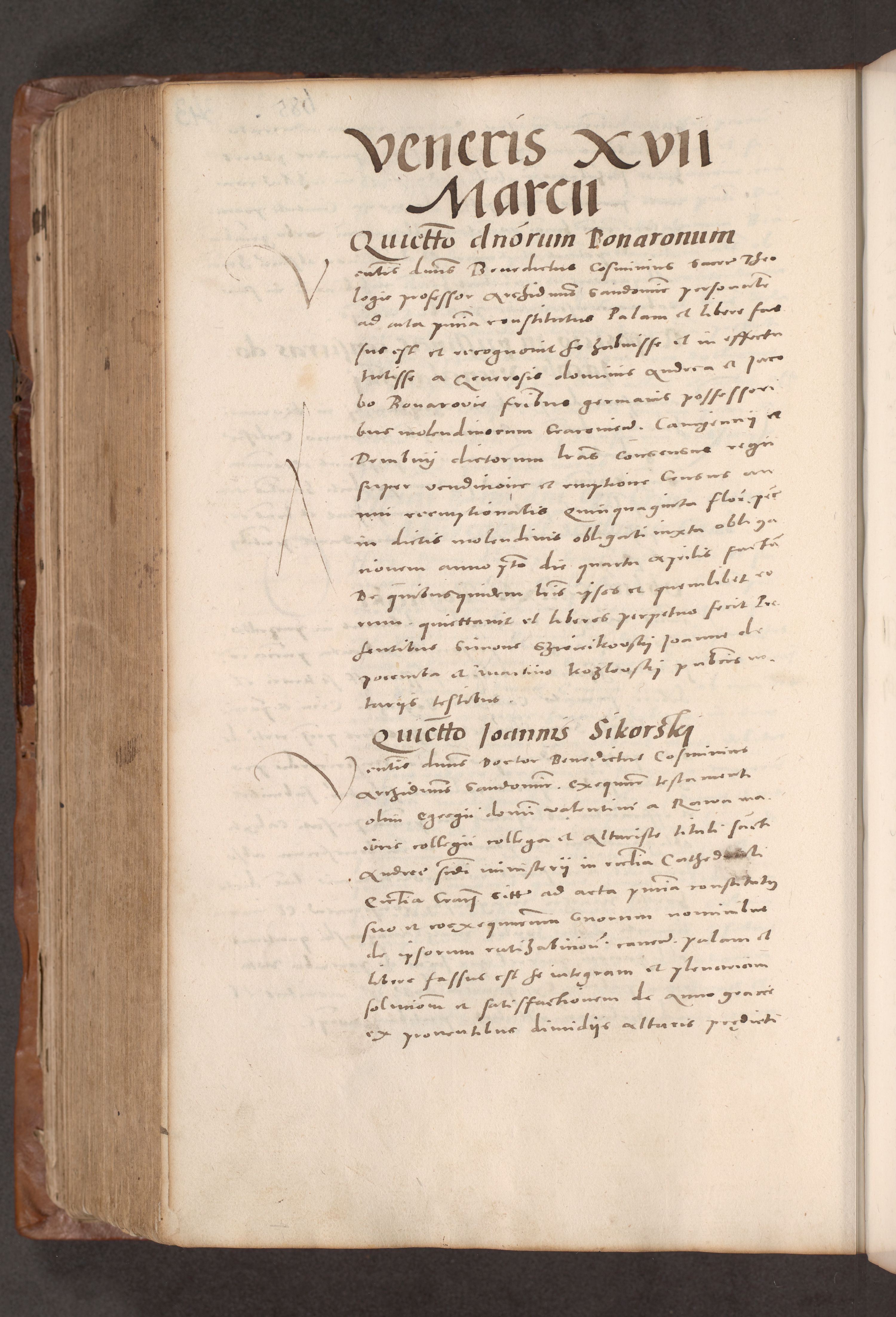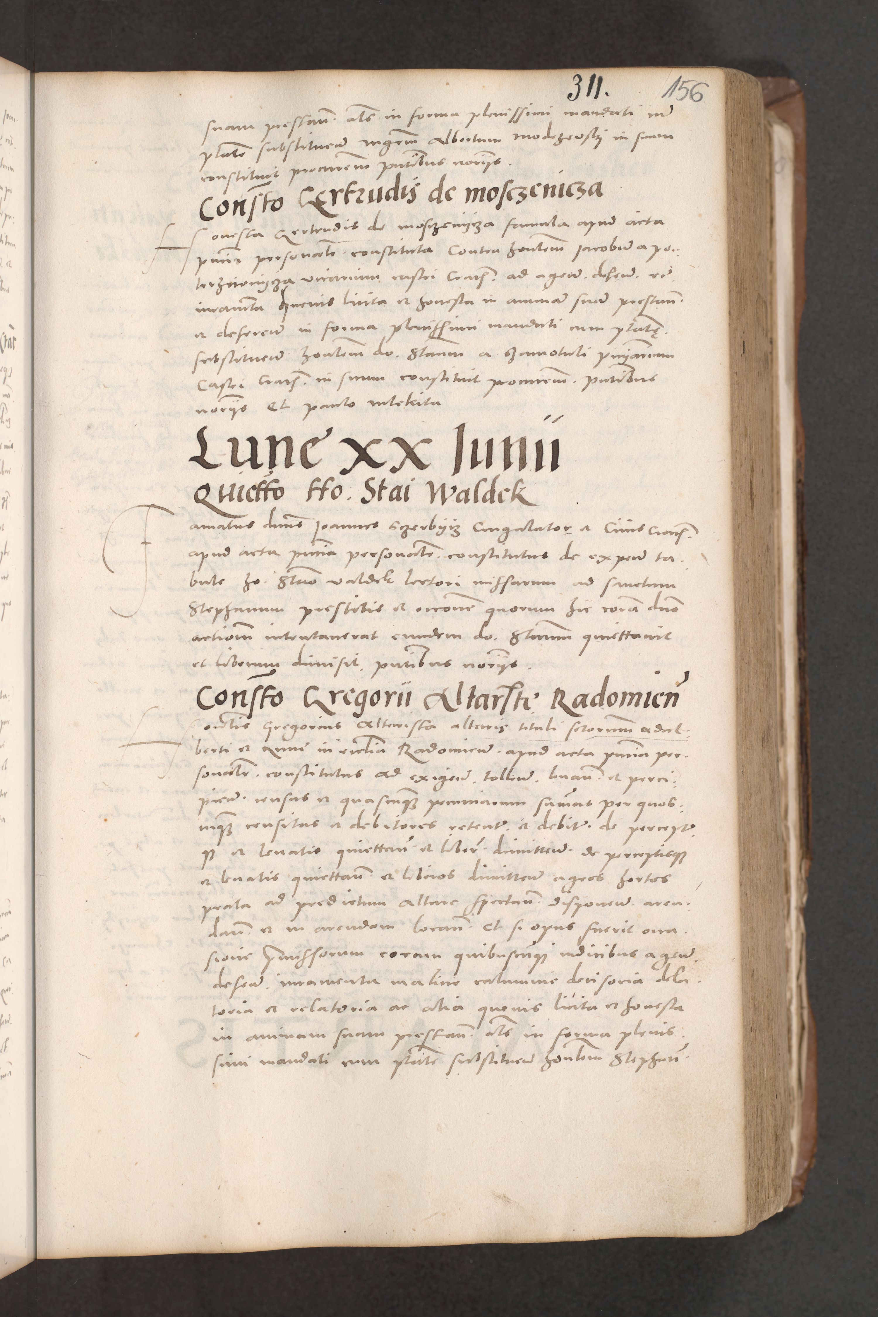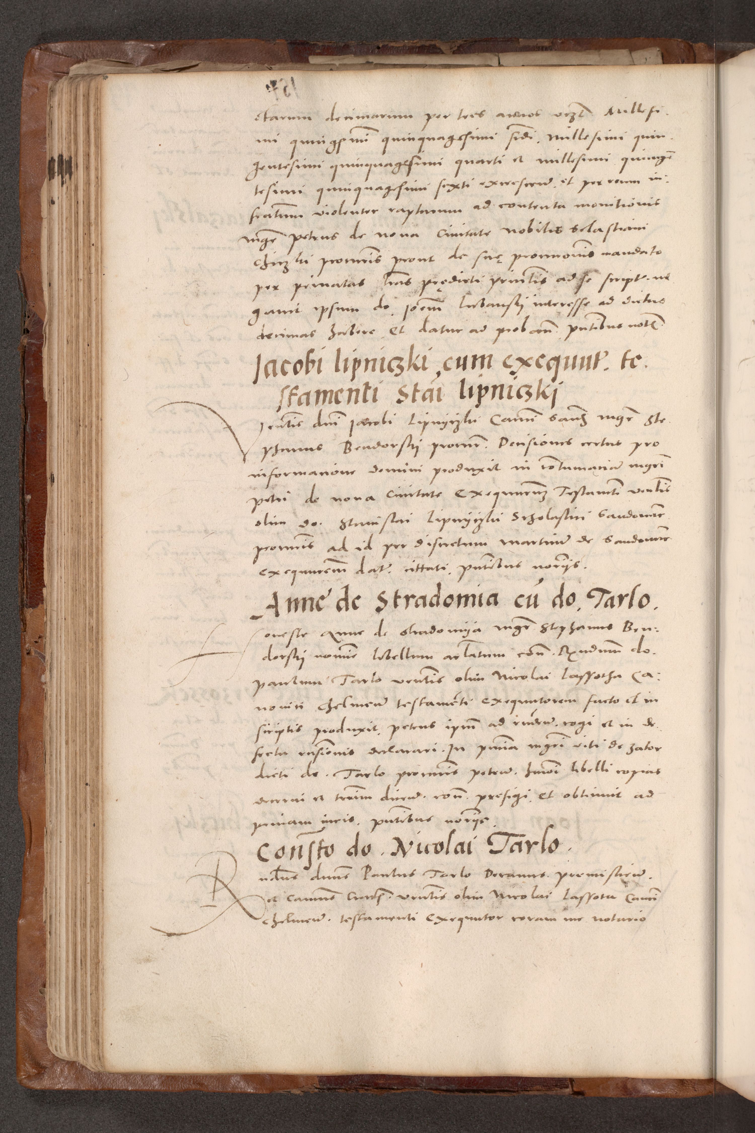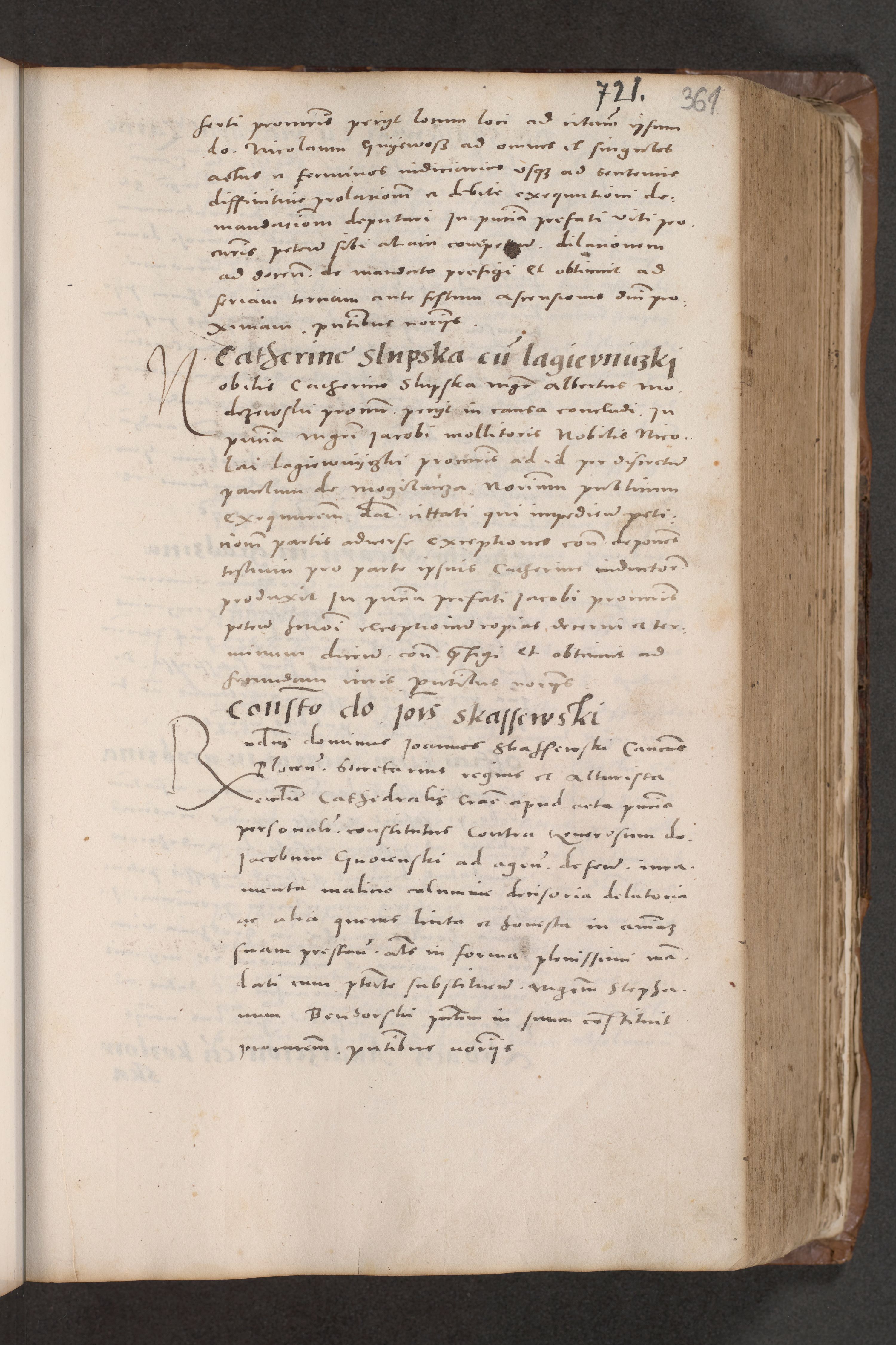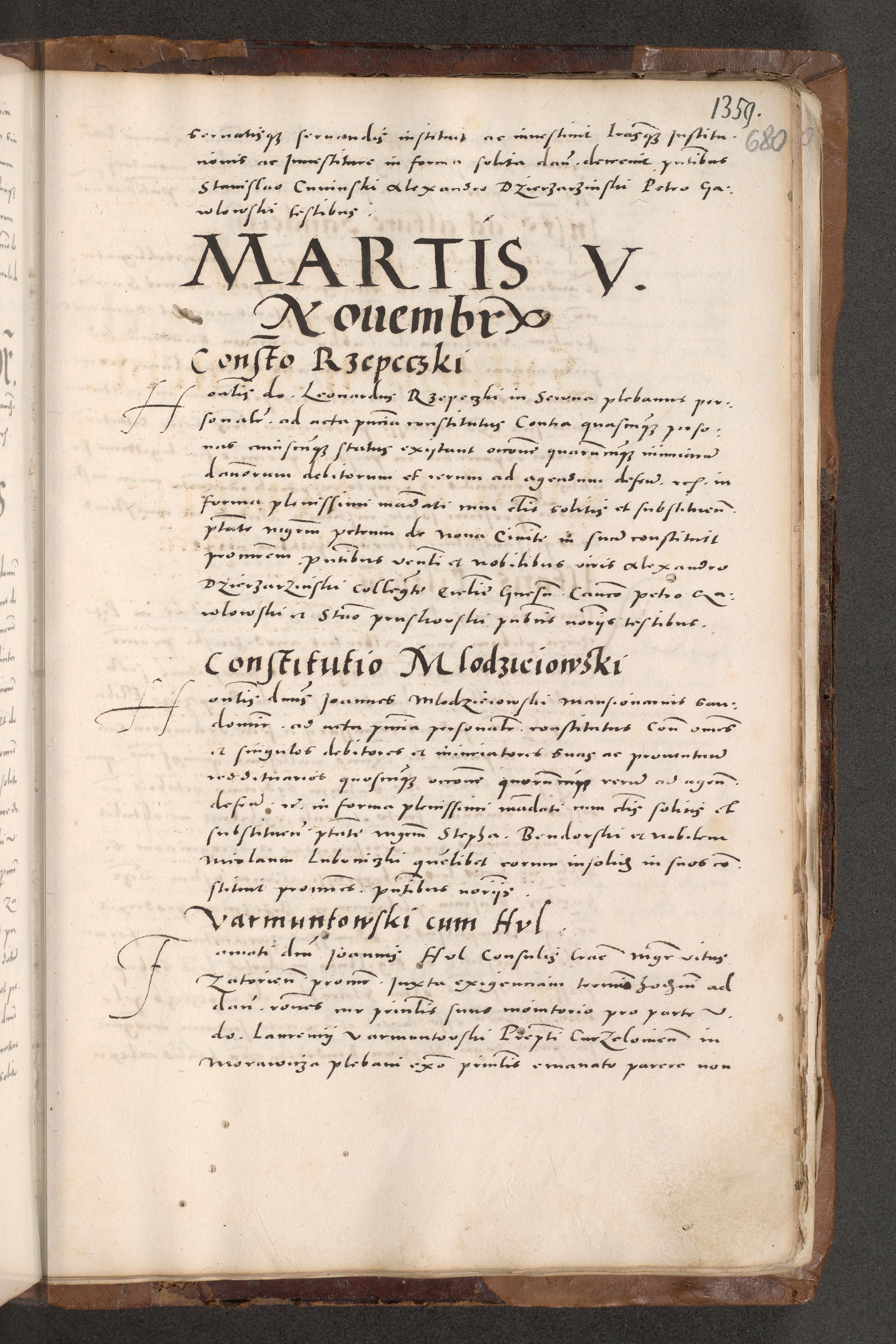 Acta actorum causarum, sententiarum tam diffinivarum quam interloquutoriarum, decretorum, obligationum, quietationum et constitutionum procuratorum coram reverendo domino Stanislao Szlomowski praeposito Calissieensi, archidiacono Sandecensi, canonico vicarioque in spiritualibus generali Cracoviensi ad annum Domini millesimum quingentesimum quinquagesimum octavum, cuius indicio prima, pontificatus sanctissimi domini nostri Pauli divina providencia pape quarti, anno illius tercio, feliciter sequuntur.