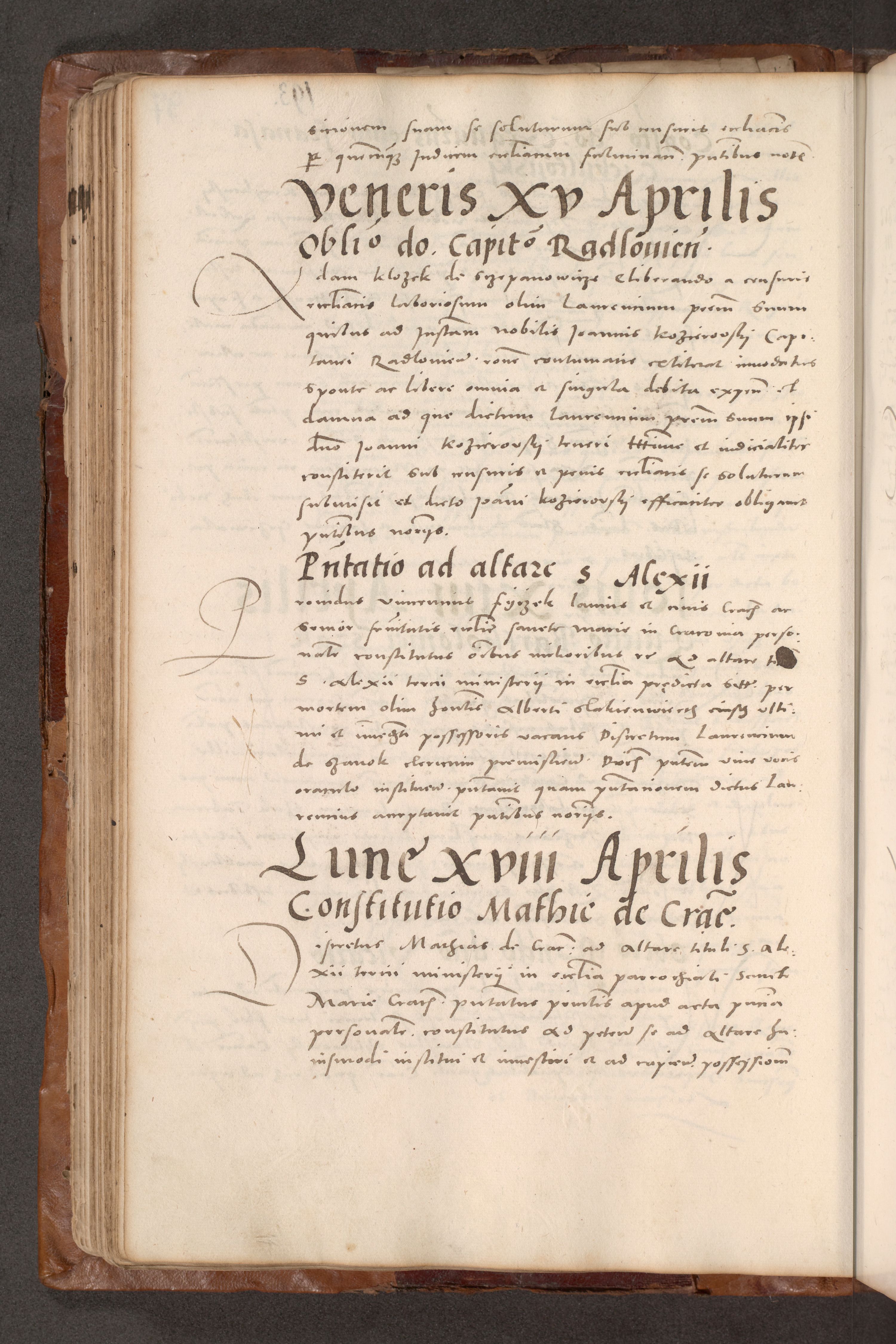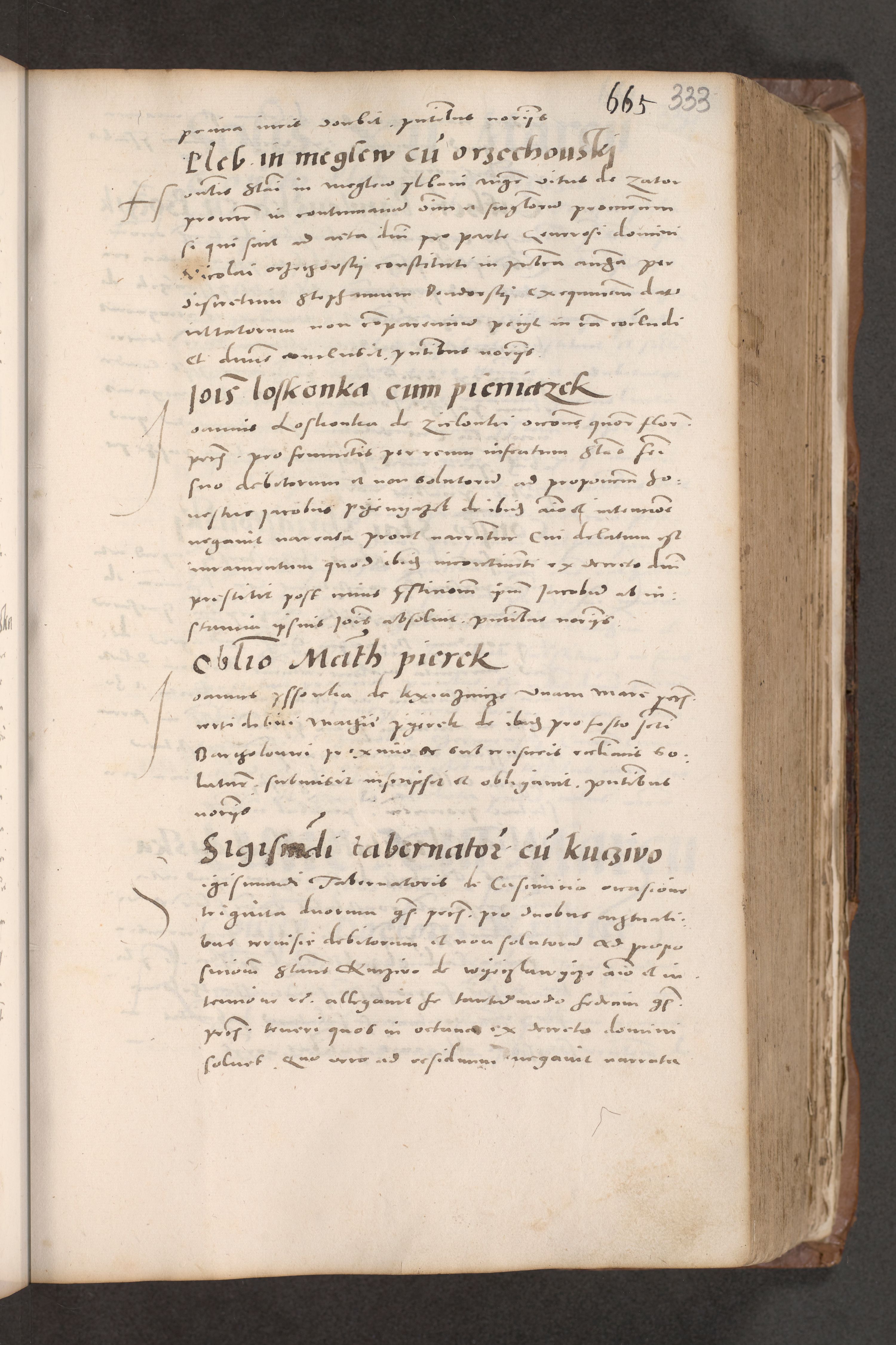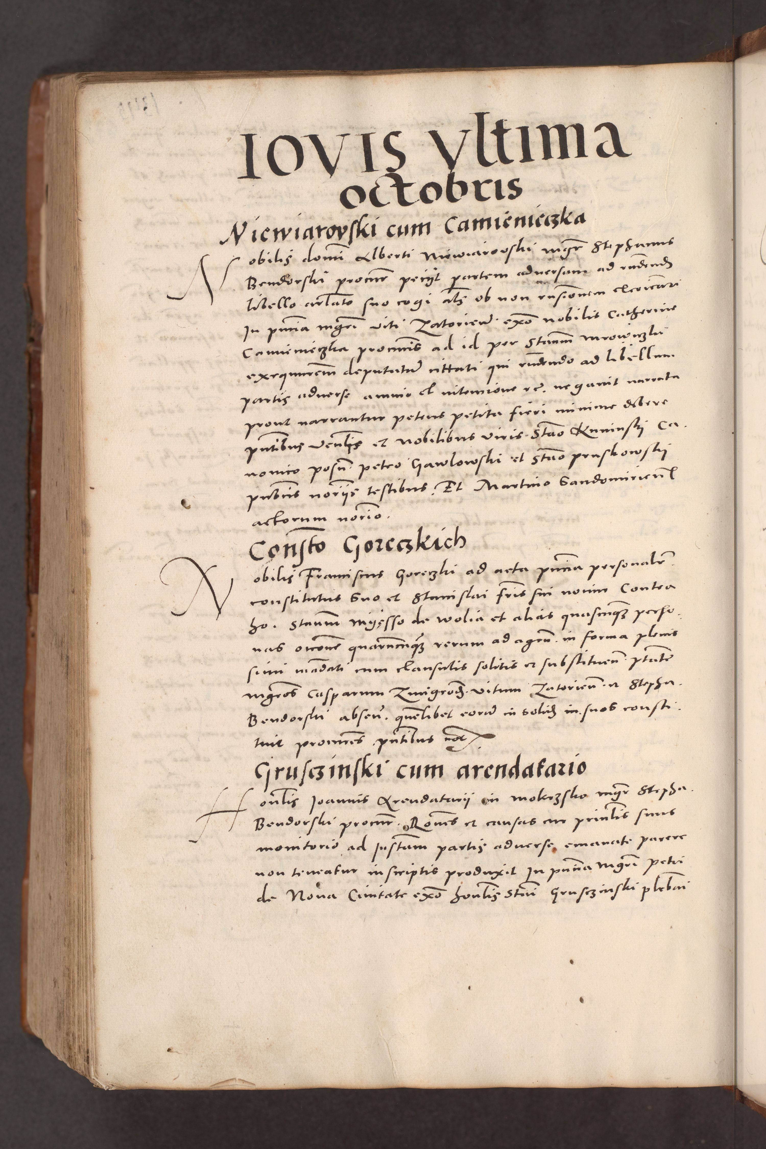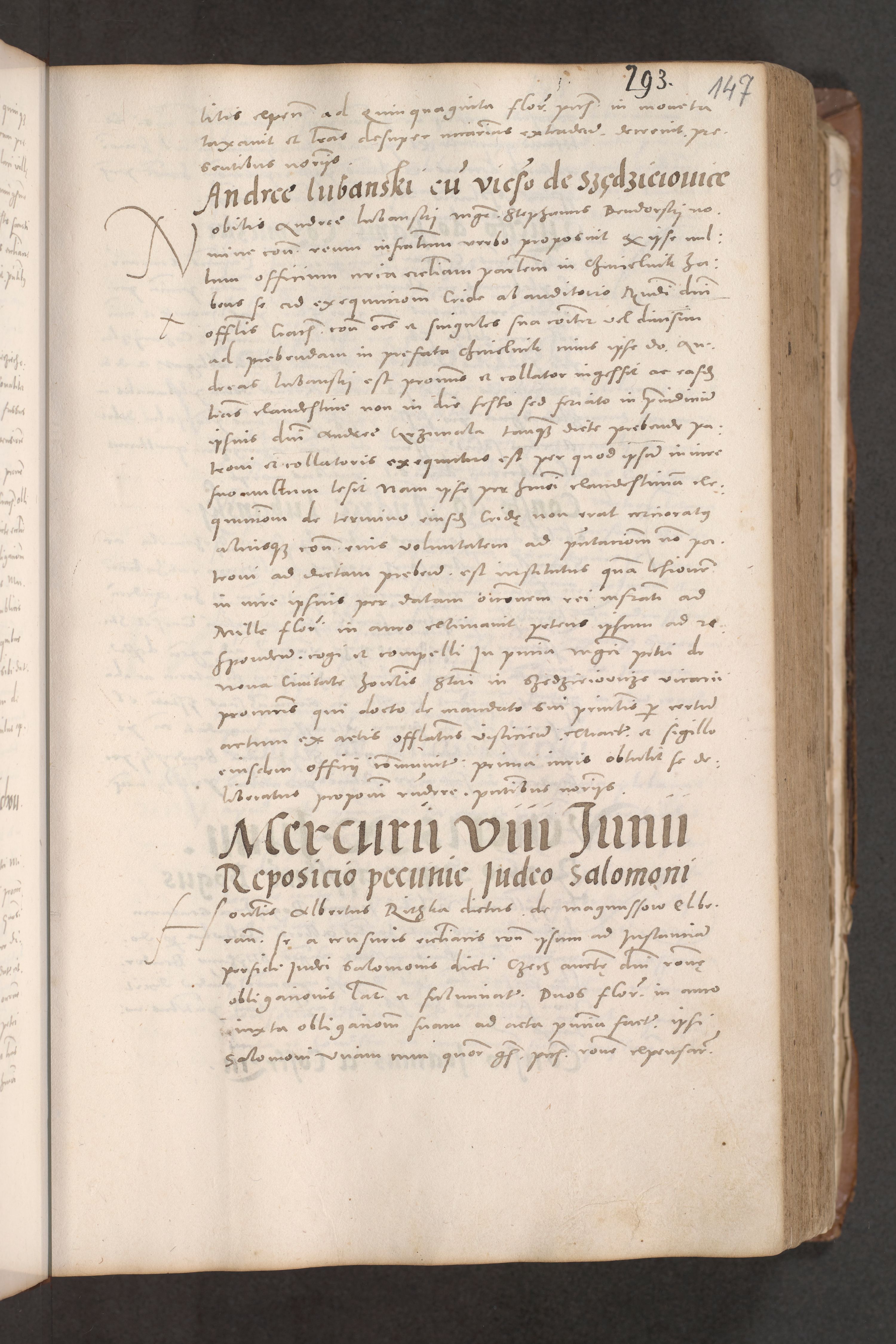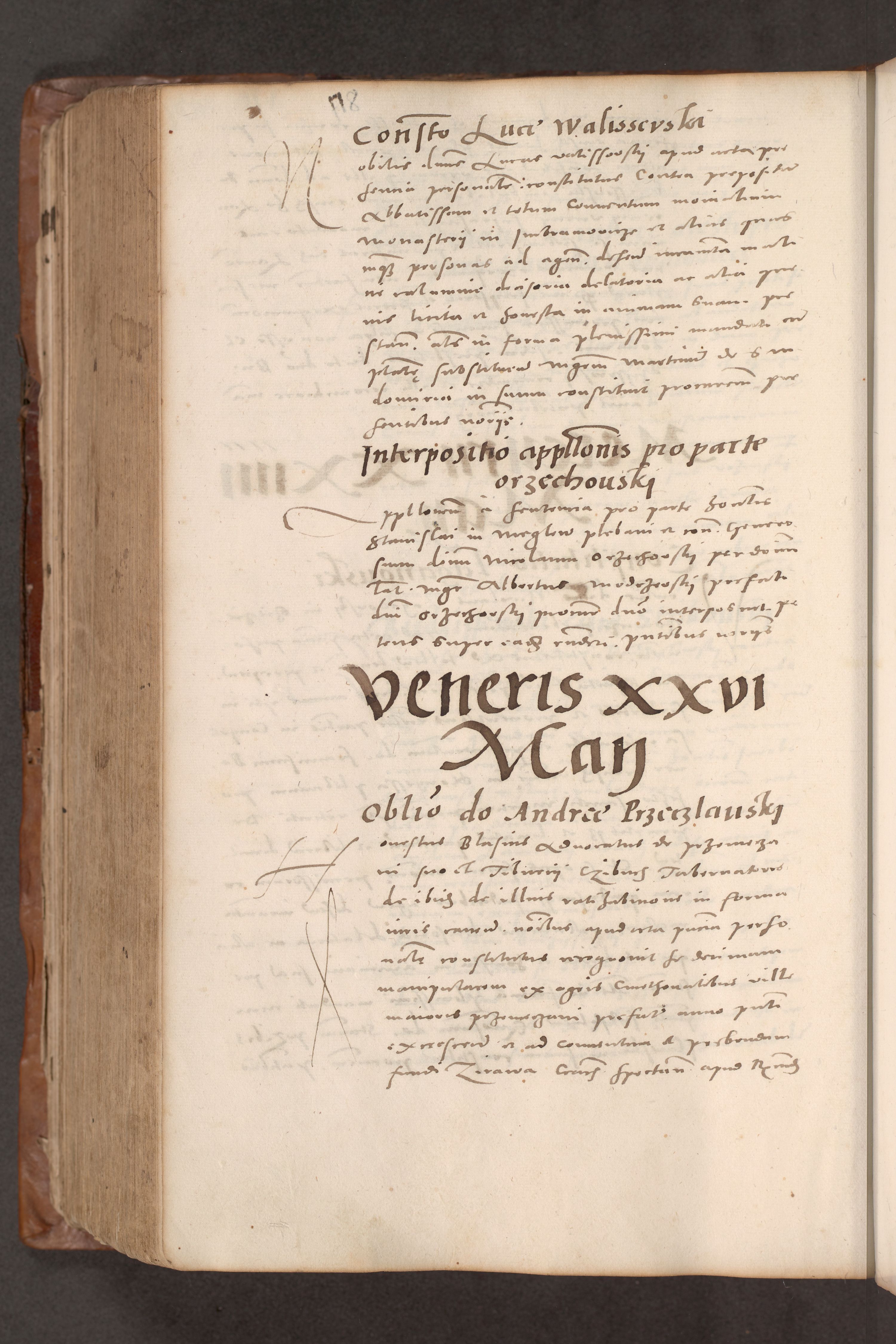 Acta actorum causarum, sententiarum tam diffinivarum quam interloquutoriarum, decretorum, obligationum, quietationum et constitutionum procuratorum coram reverendo domino Stanislao Szlomowski praeposito Calissieensi, archidiacono Sandecensi, canonico vicarioque in spiritualibus generali Cracoviensi ad annum Domini millesimum quingentesimum quinquagesimum octavum, cuius indicio prima, pontificatus sanctissimi domini nostri Pauli divina providencia pape quarti, anno illius tercio, feliciter sequuntur.