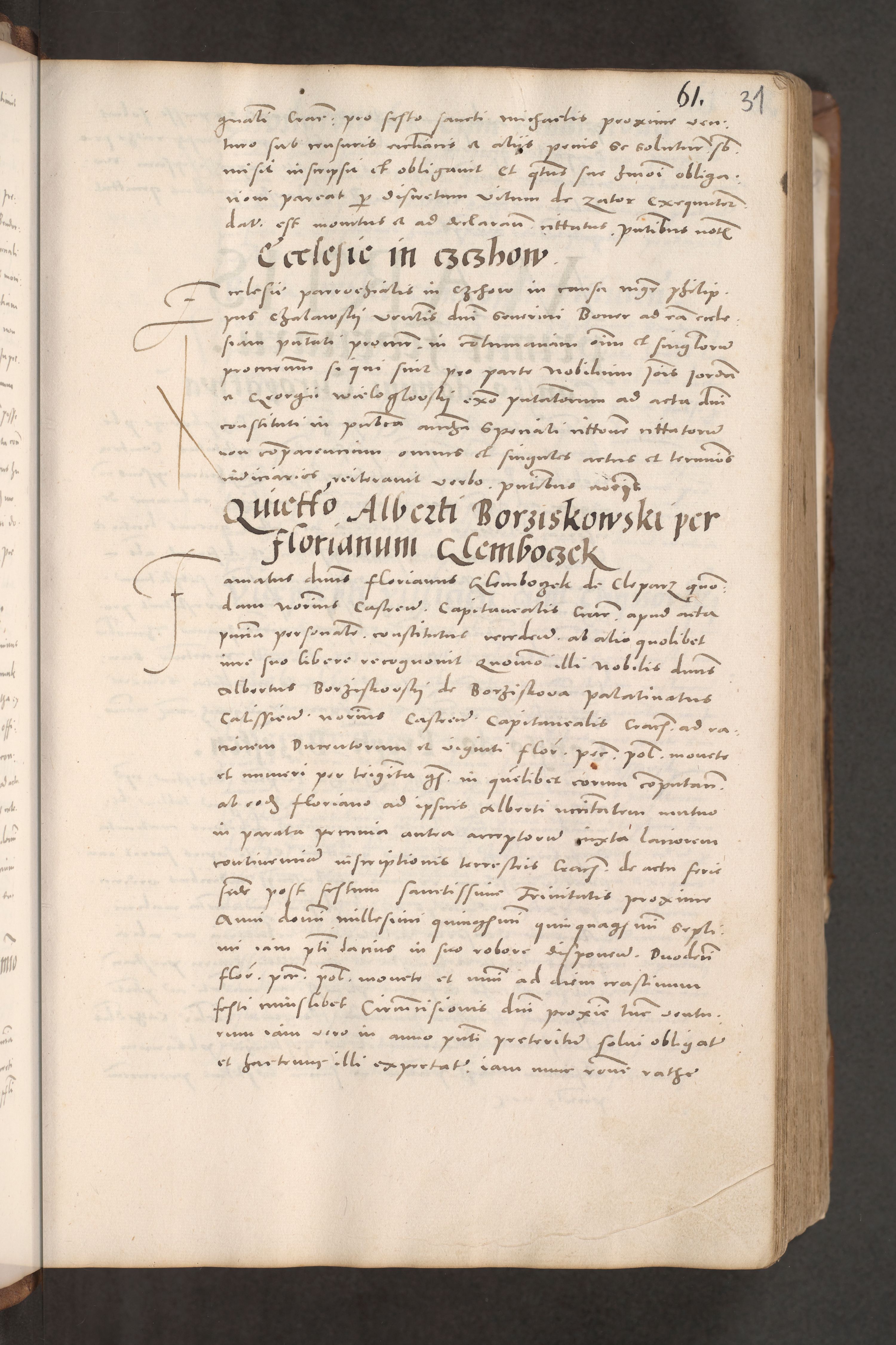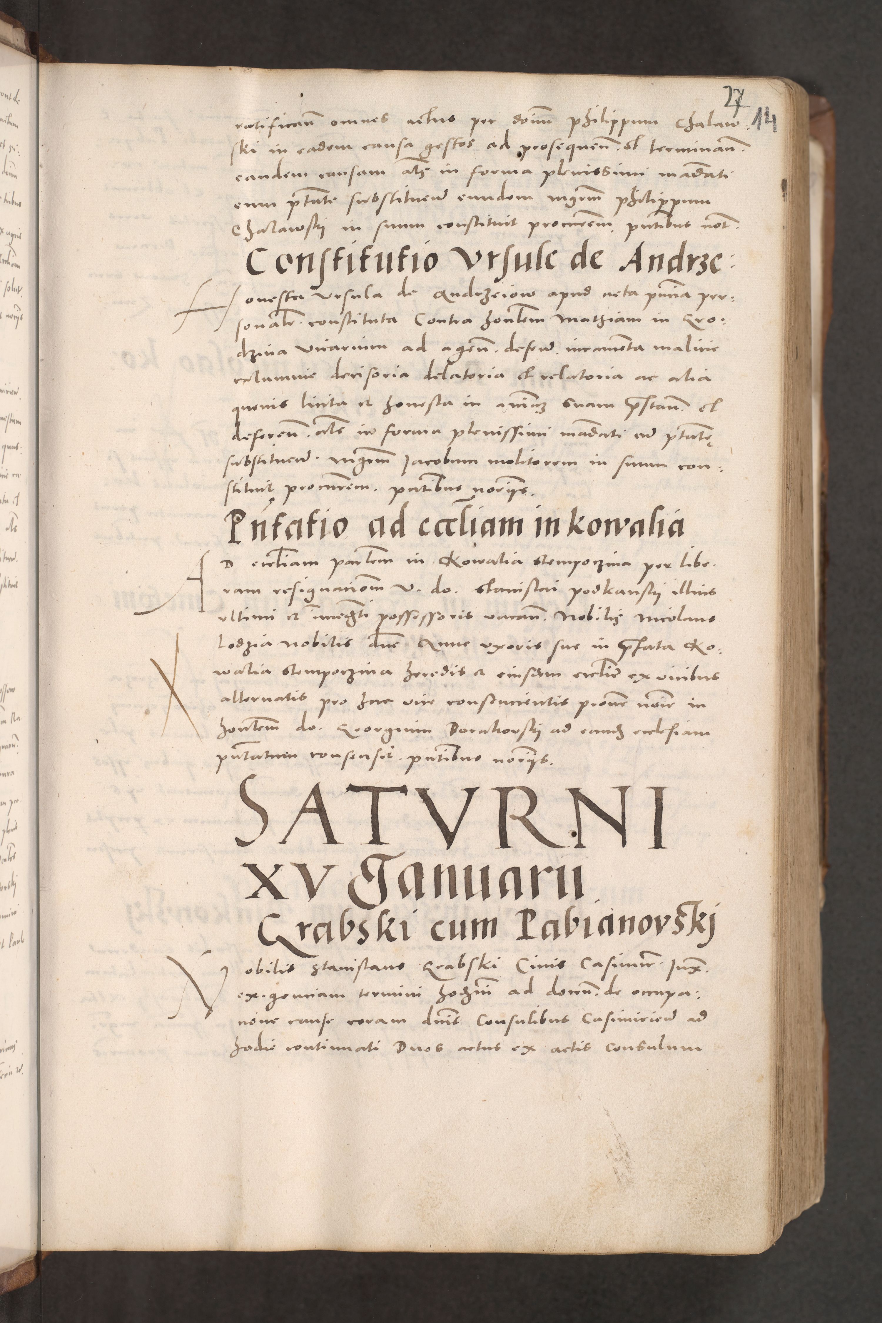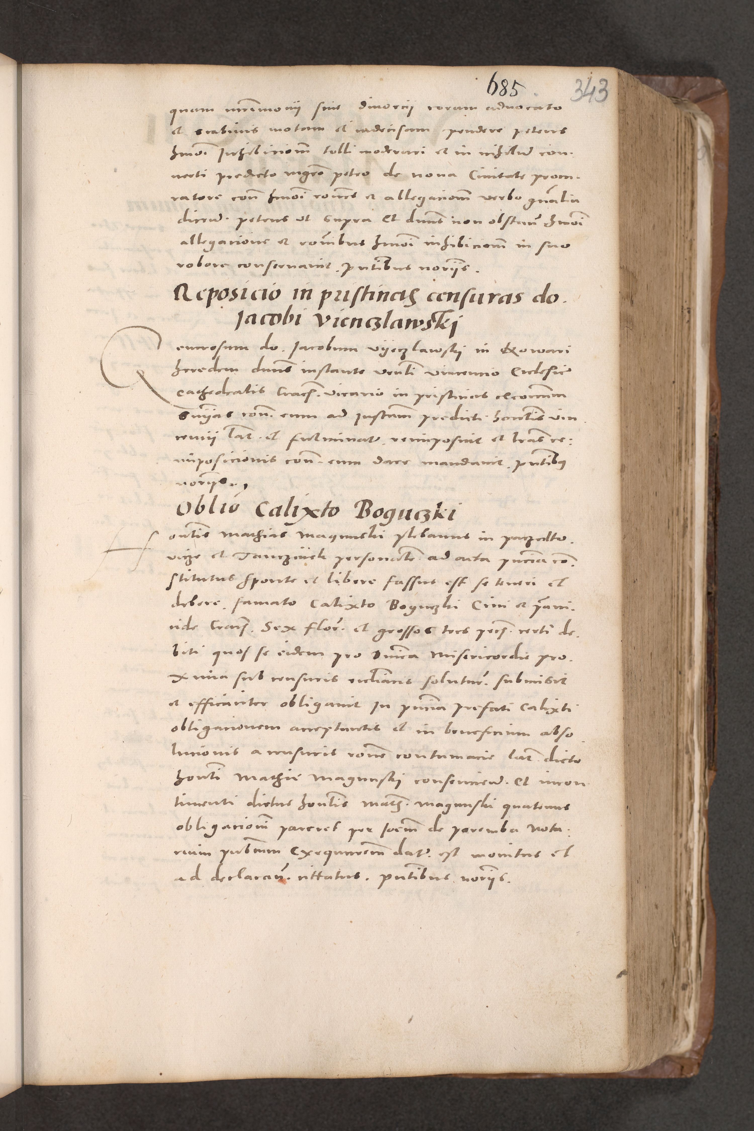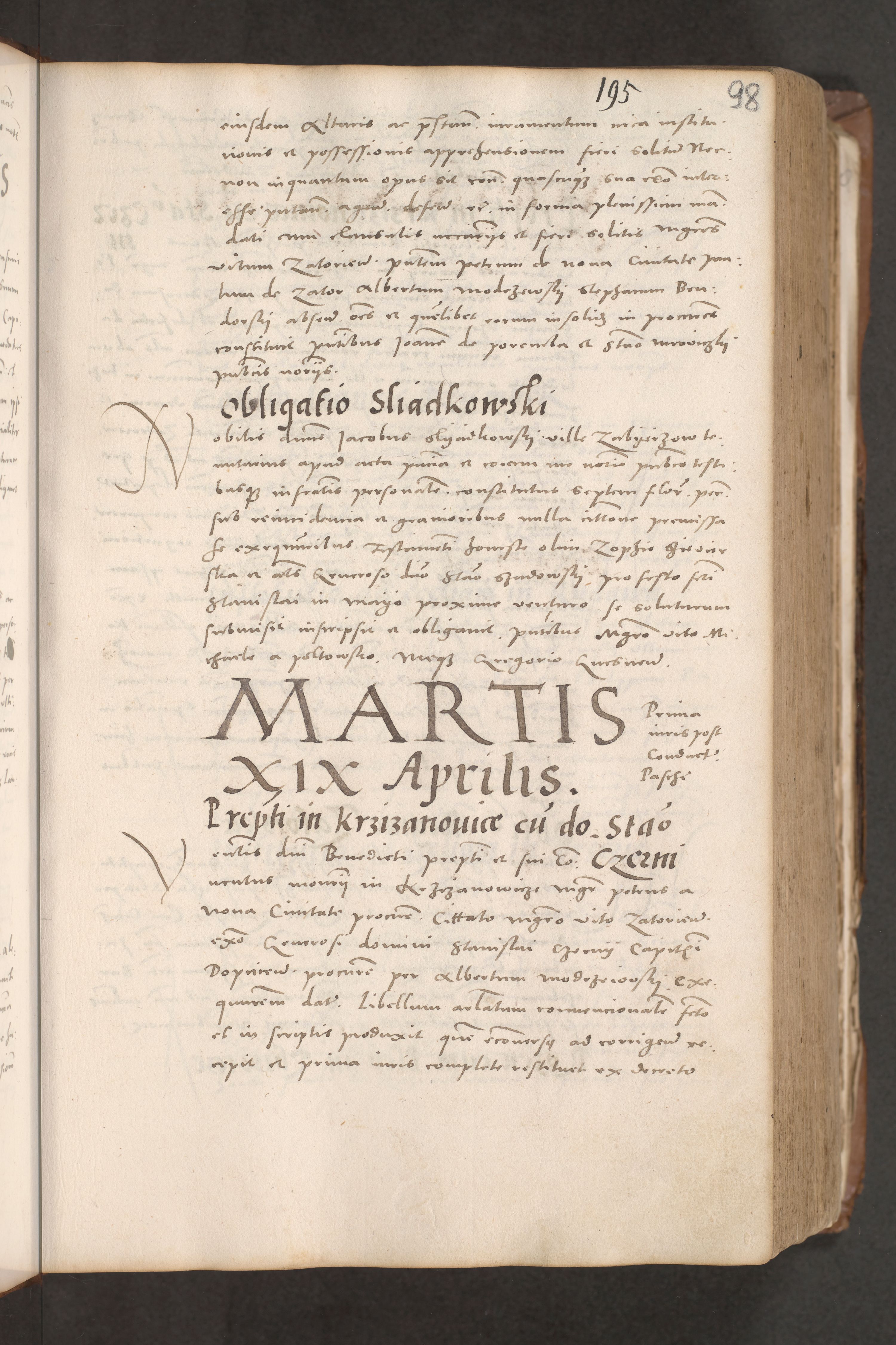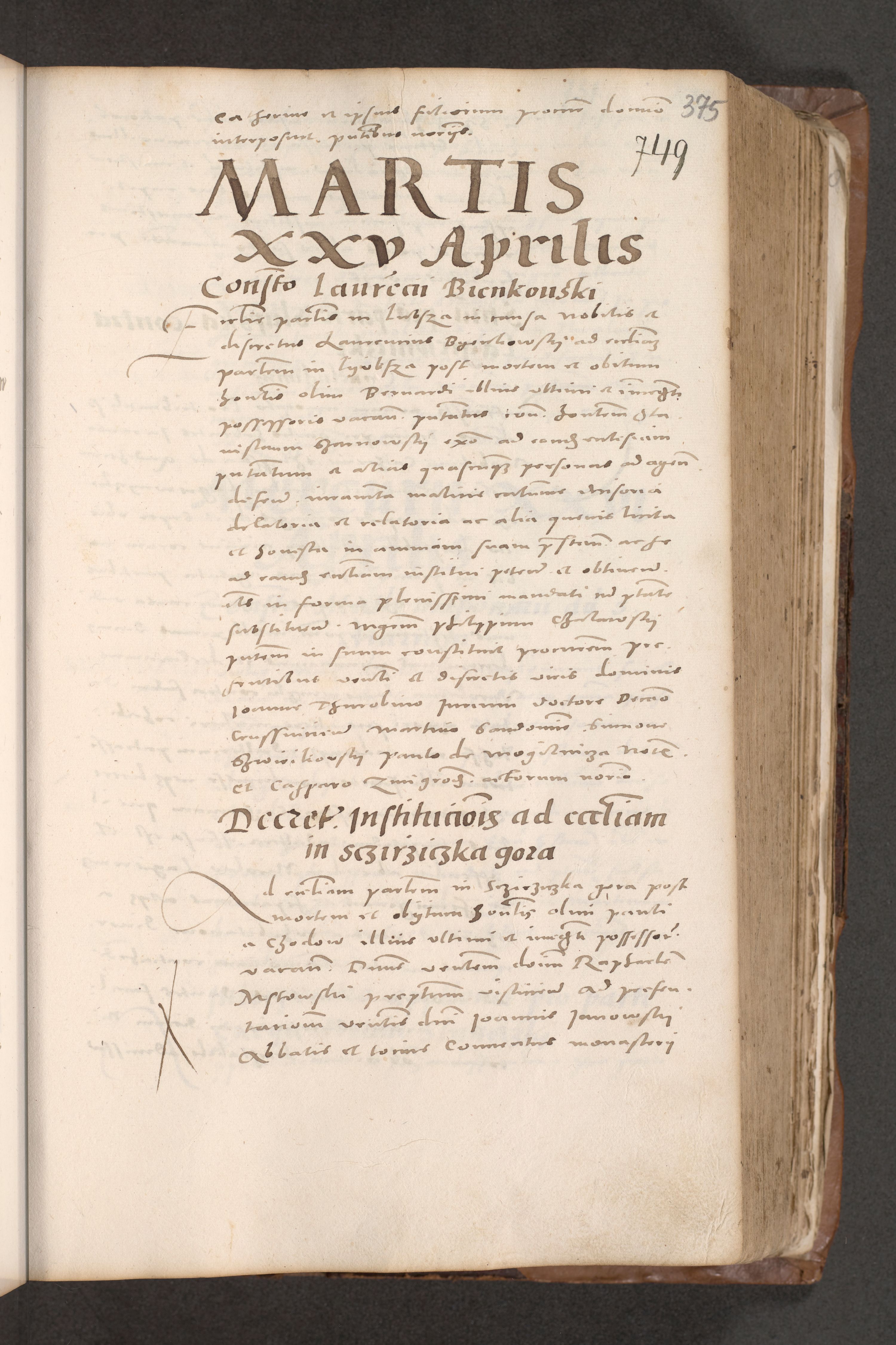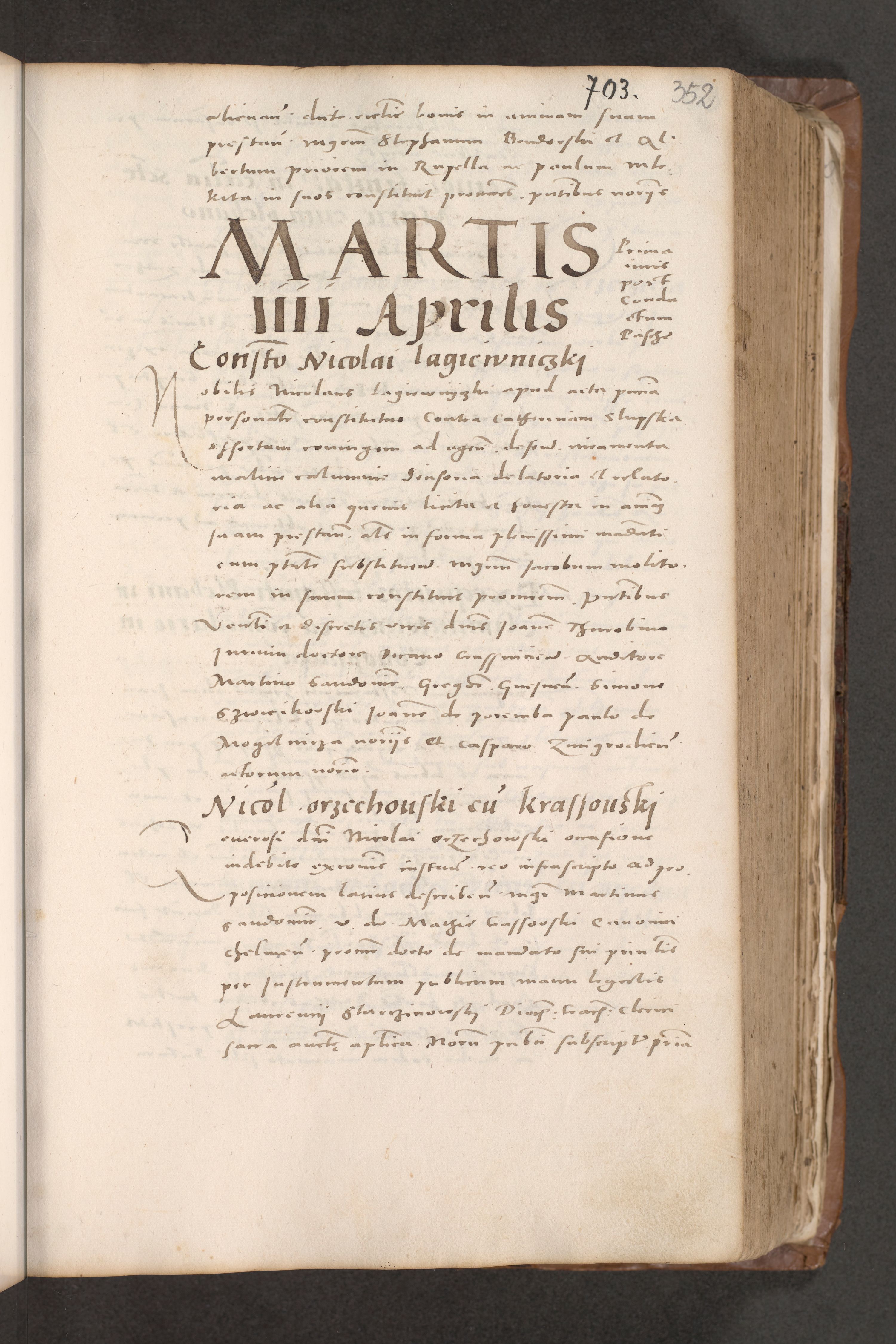 Acta actorum causarum, sententiarum tam diffinivarum quam interloquutoriarum, decretorum, obligationum, quietationum et constitutionum procuratorum coram reverendo domino Stanislao Szlomowski praeposito Calissieensi, archidiacono Sandecensi, canonico vicarioque in spiritualibus generali Cracoviensi ad annum Domini millesimum quingentesimum quinquagesimum octavum, cuius indicio prima, pontificatus sanctissimi domini nostri Pauli divina providencia pape quarti, anno illius tercio, feliciter sequuntur.