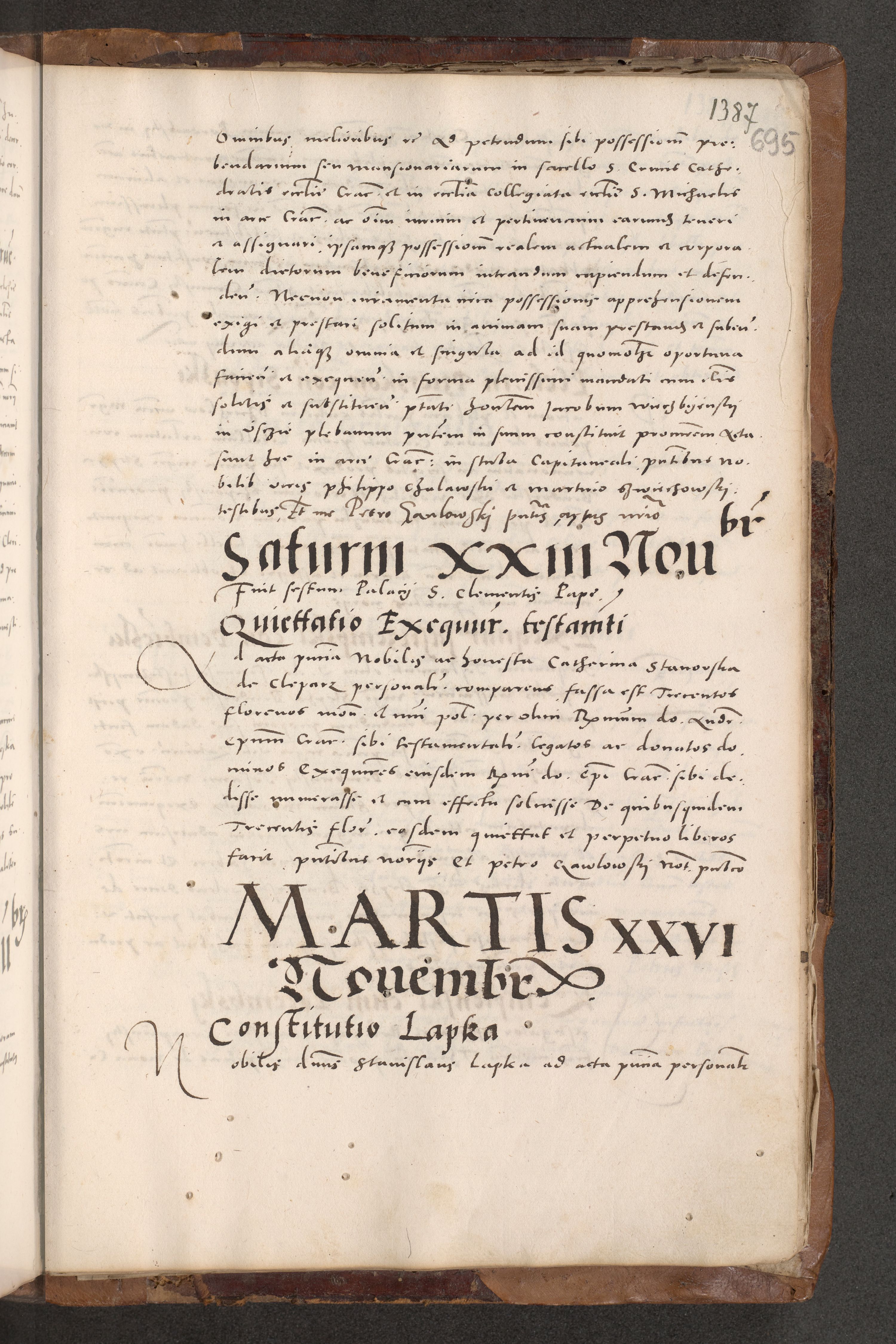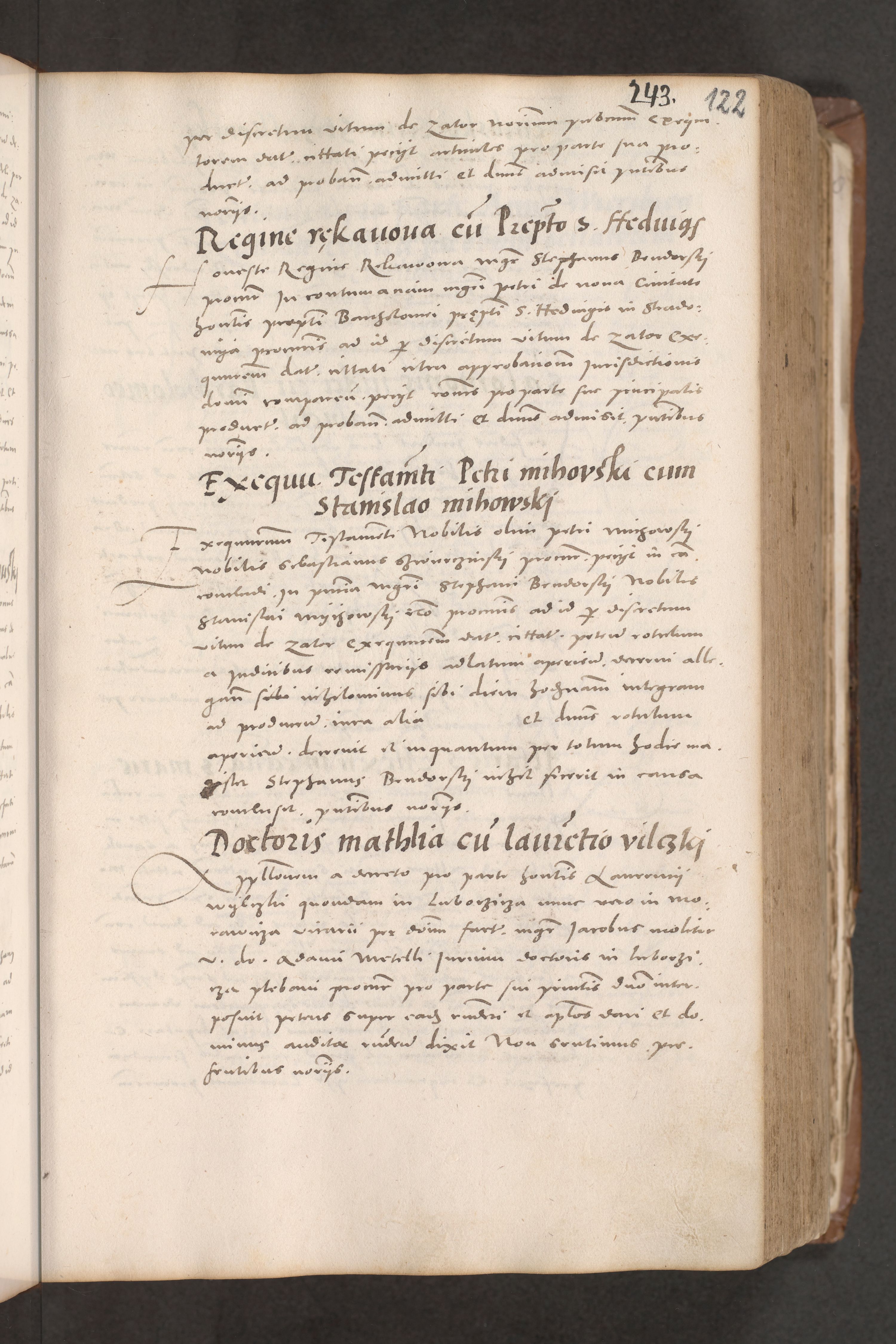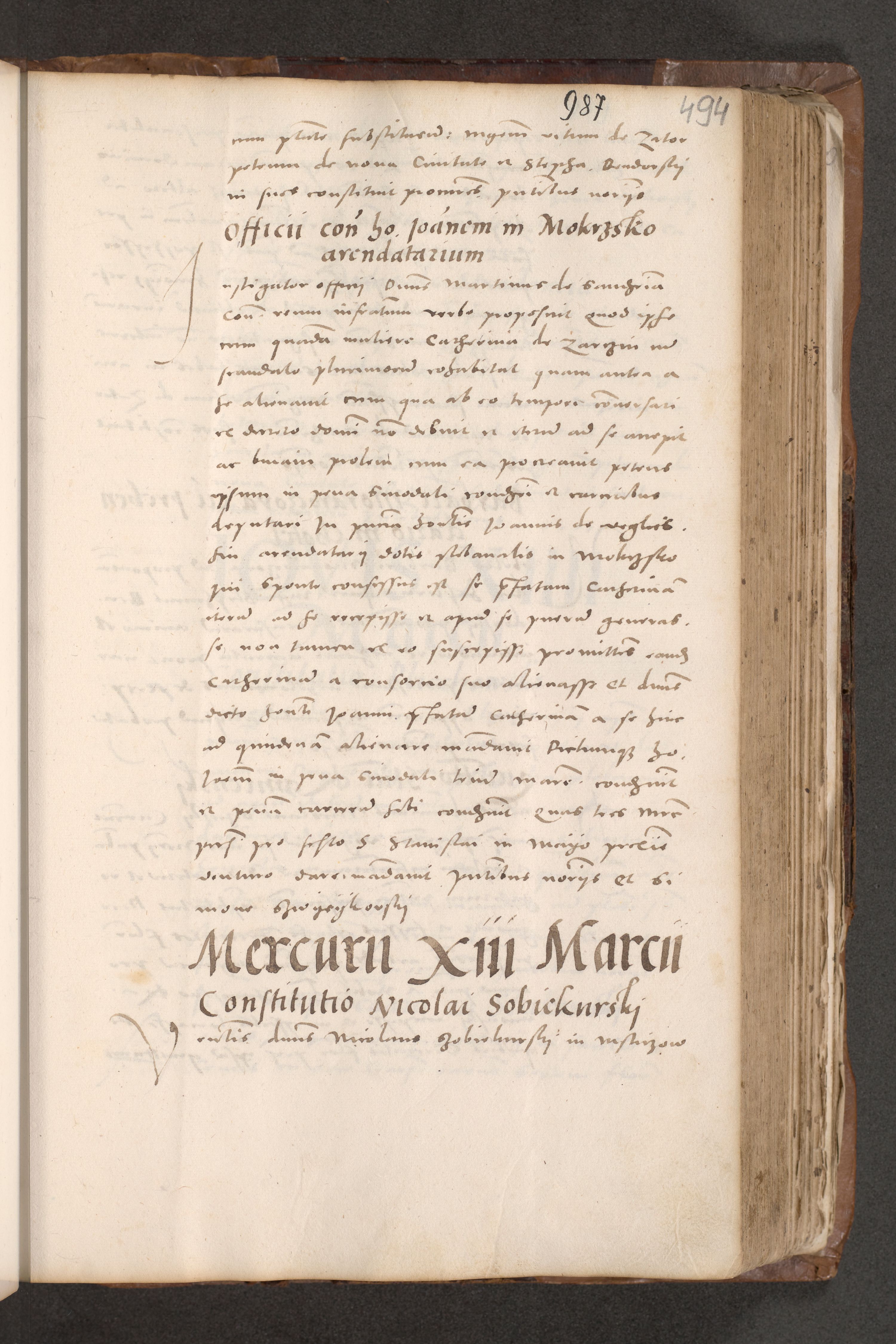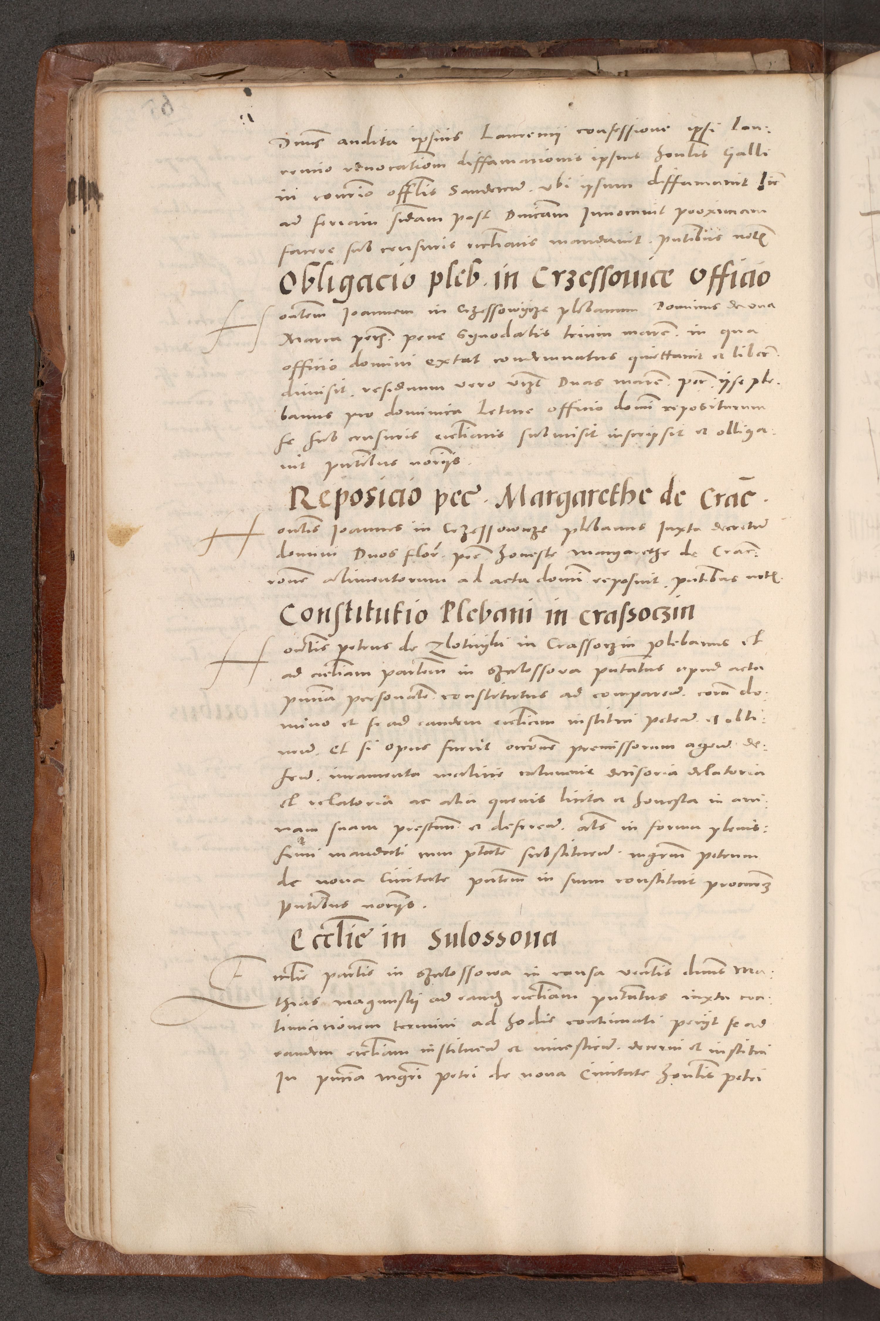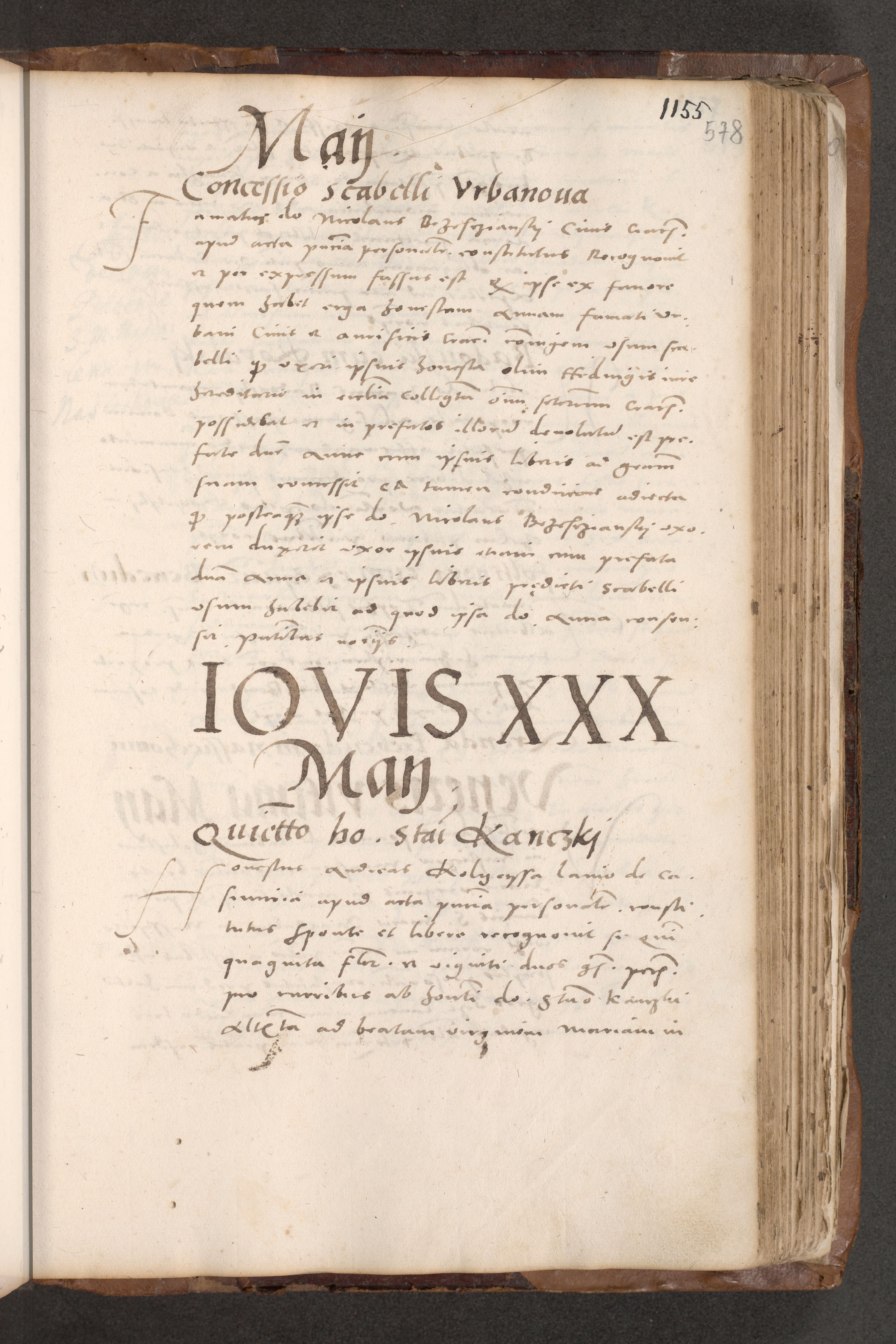 Acta actorum causarum, sententiarum tam diffinivarum quam interloquutoriarum, decretorum, obligationum, quietationum et constitutionum procuratorum coram reverendo domino Stanislao Szlomowski praeposito Calissieensi, archidiacono Sandecensi, canonico vicarioque in spiritualibus generali Cracoviensi ad annum Domini millesimum quingentesimum quinquagesimum octavum, cuius indicio prima, pontificatus sanctissimi domini nostri Pauli divina providencia pape quarti, anno illius tercio, feliciter sequuntur.