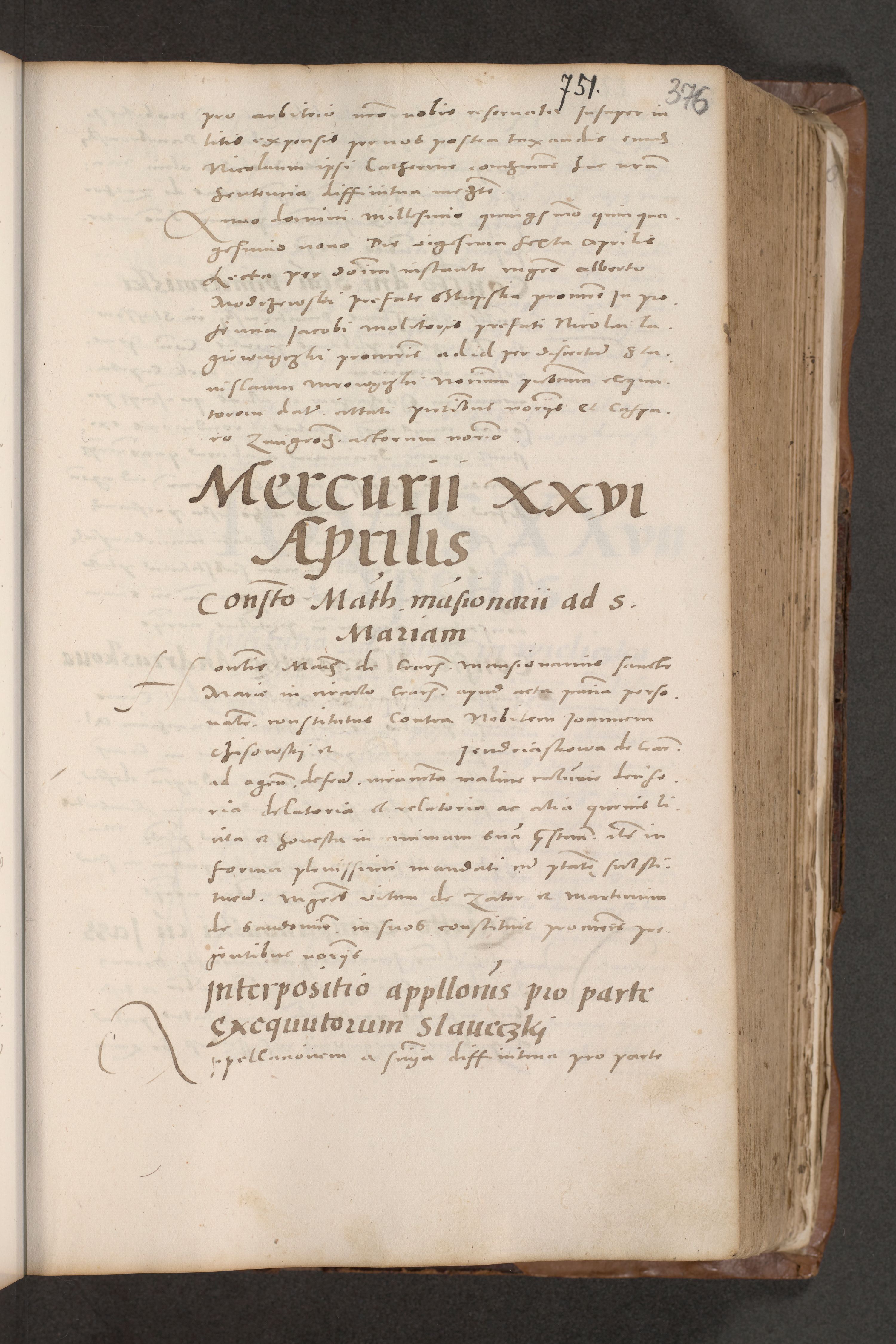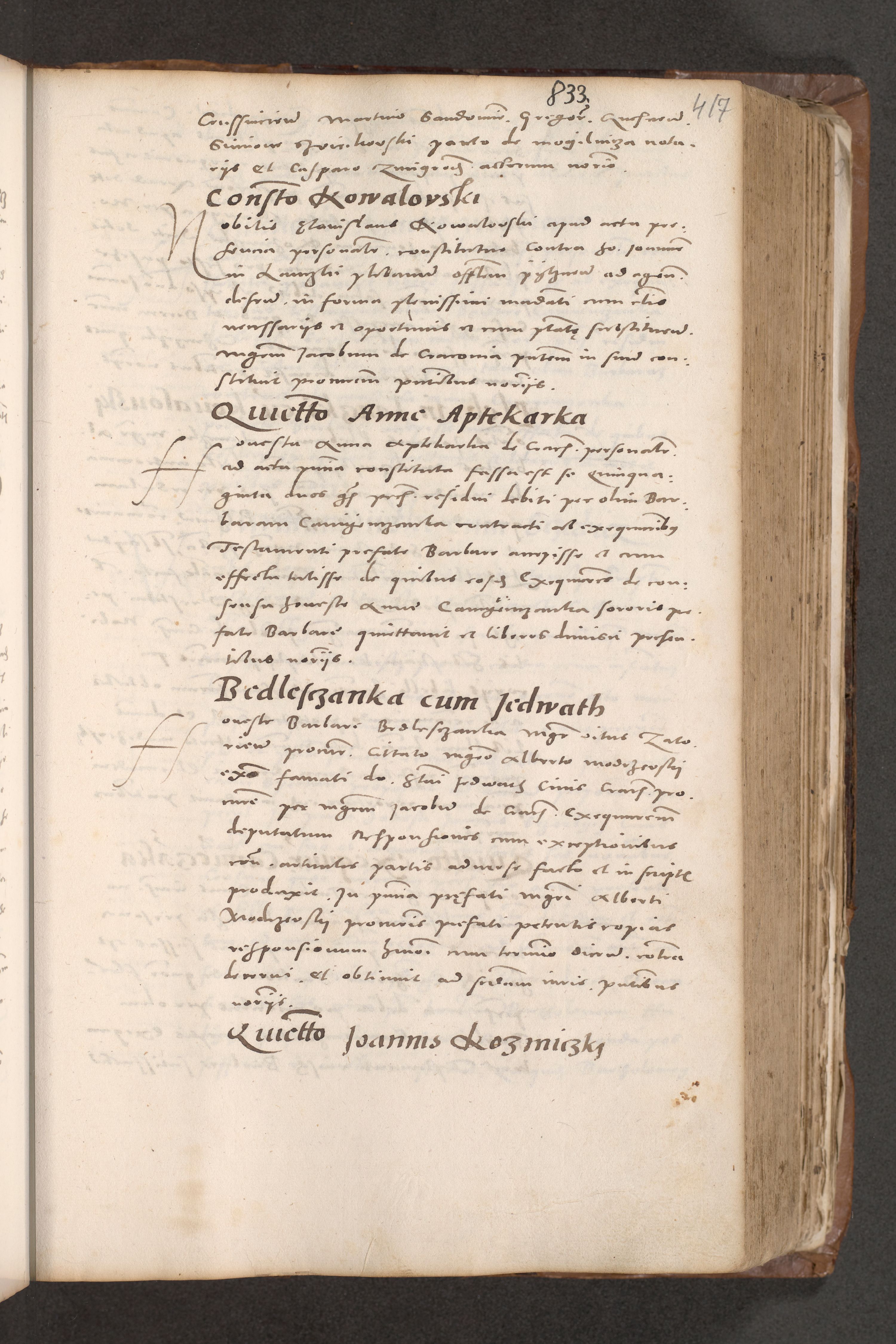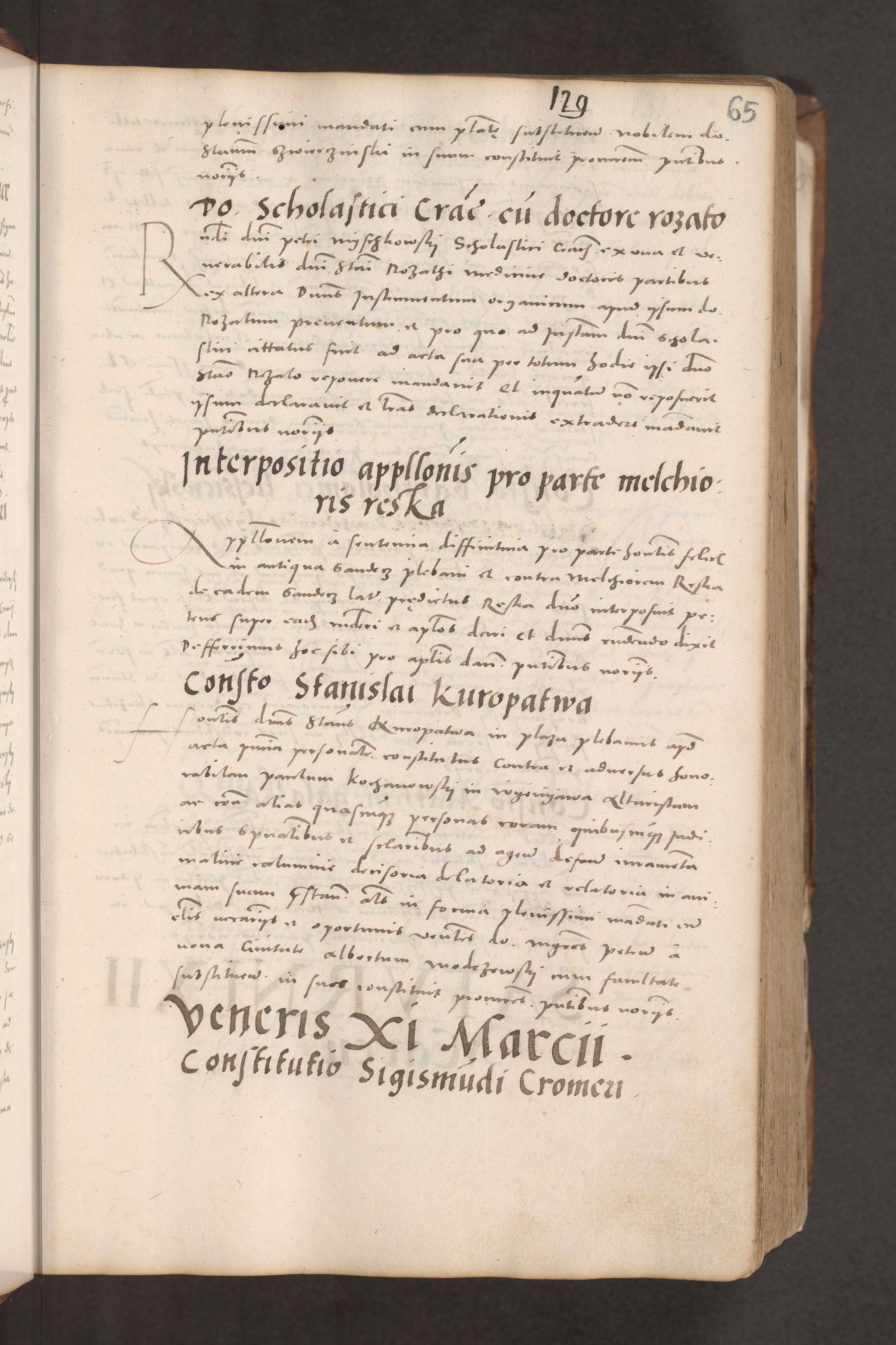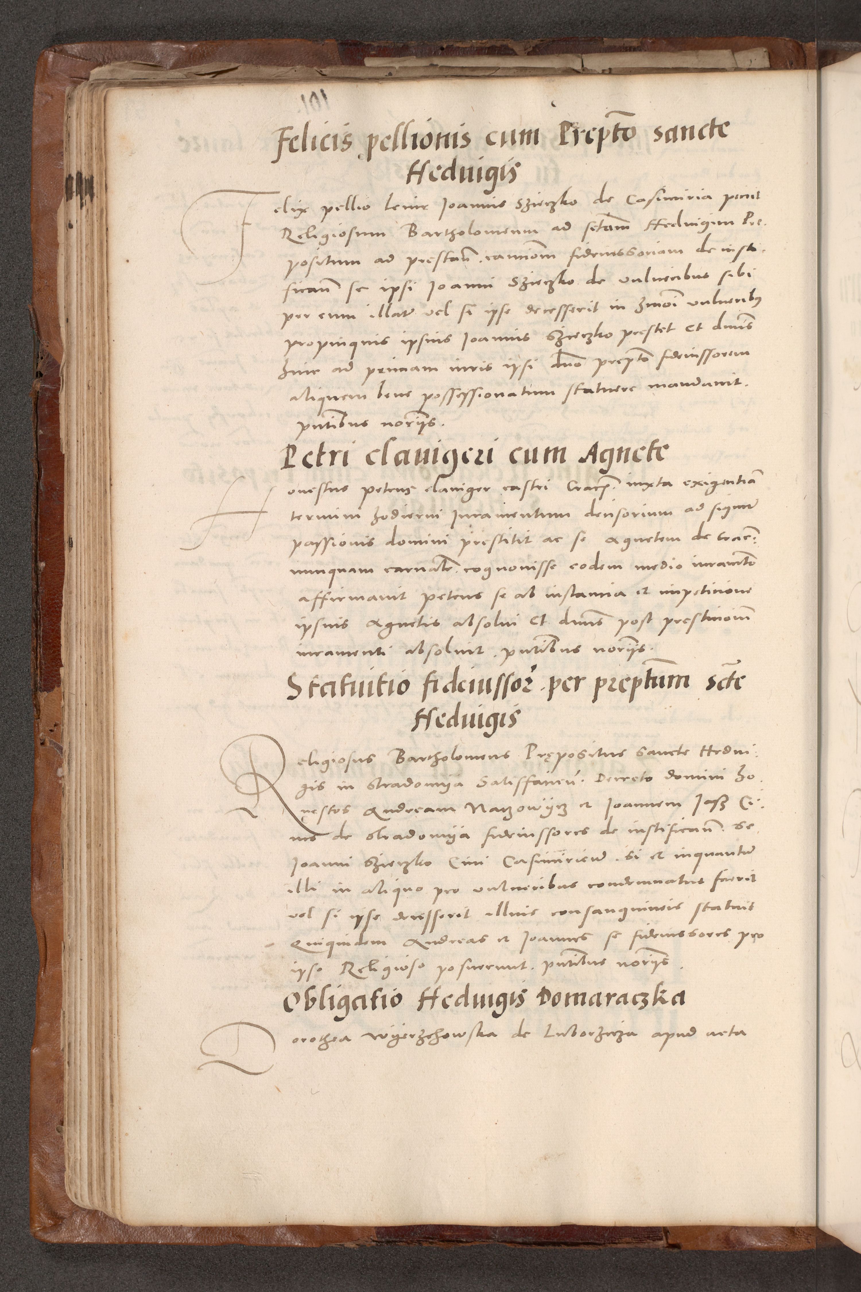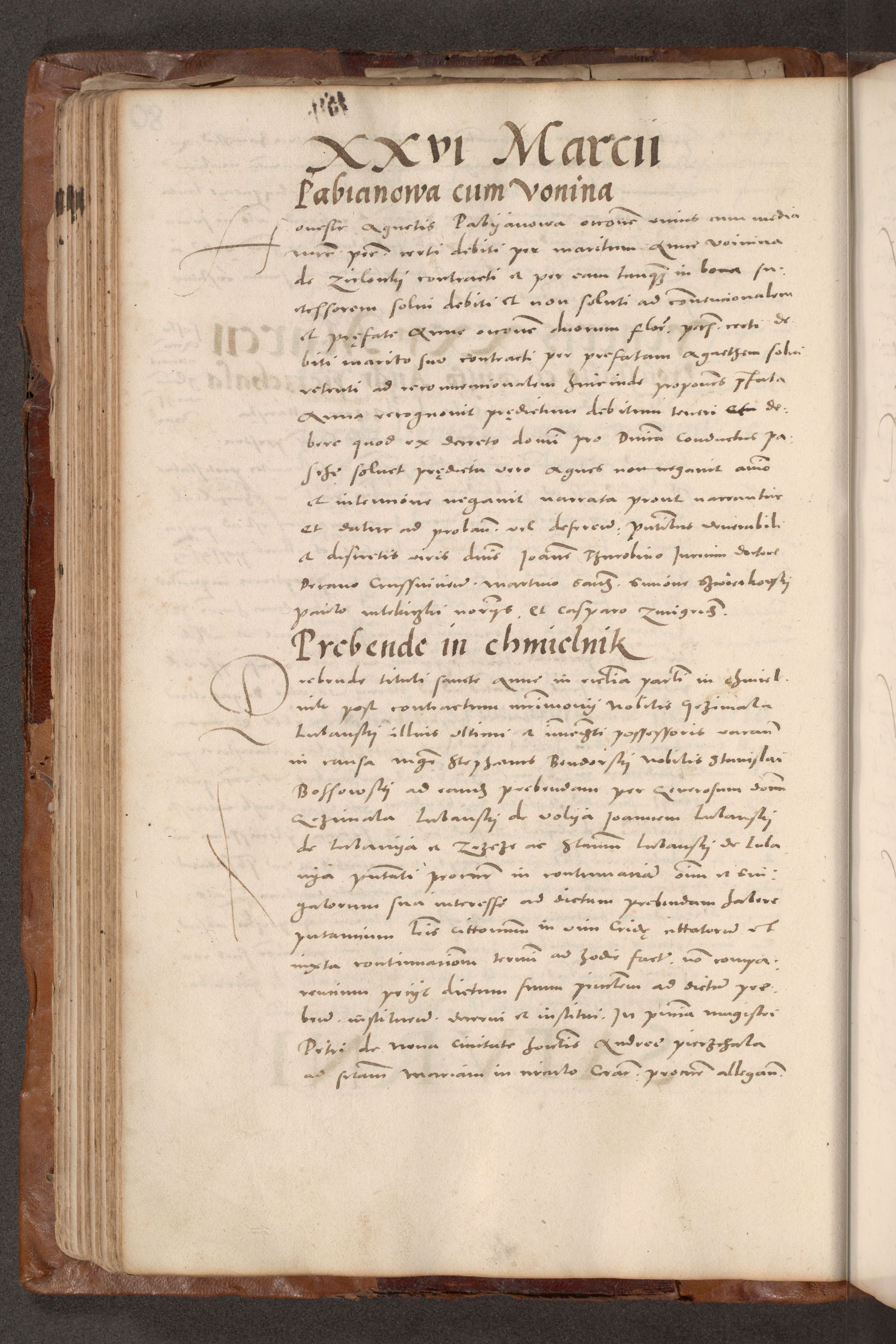 Acta actorum causarum, sententiarum tam diffinivarum quam interloquutoriarum, decretorum, obligationum, quietationum et constitutionum procuratorum coram reverendo domino Stanislao Szlomowski praeposito Calissieensi, archidiacono Sandecensi, canonico vicarioque in spiritualibus generali Cracoviensi ad annum Domini millesimum quingentesimum quinquagesimum octavum, cuius indicio prima, pontificatus sanctissimi domini nostri Pauli divina providencia pape quarti, anno illius tercio, feliciter sequuntur.