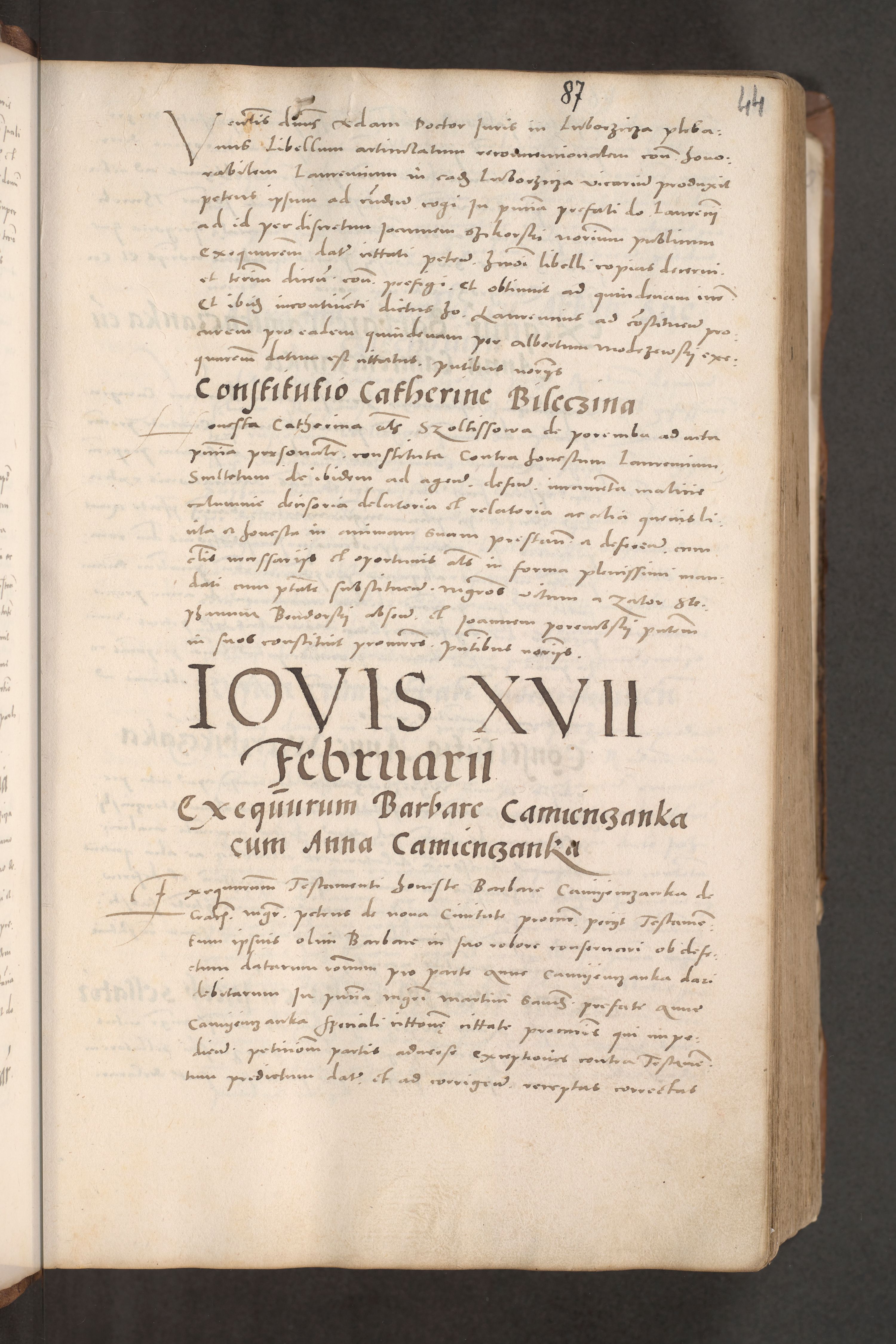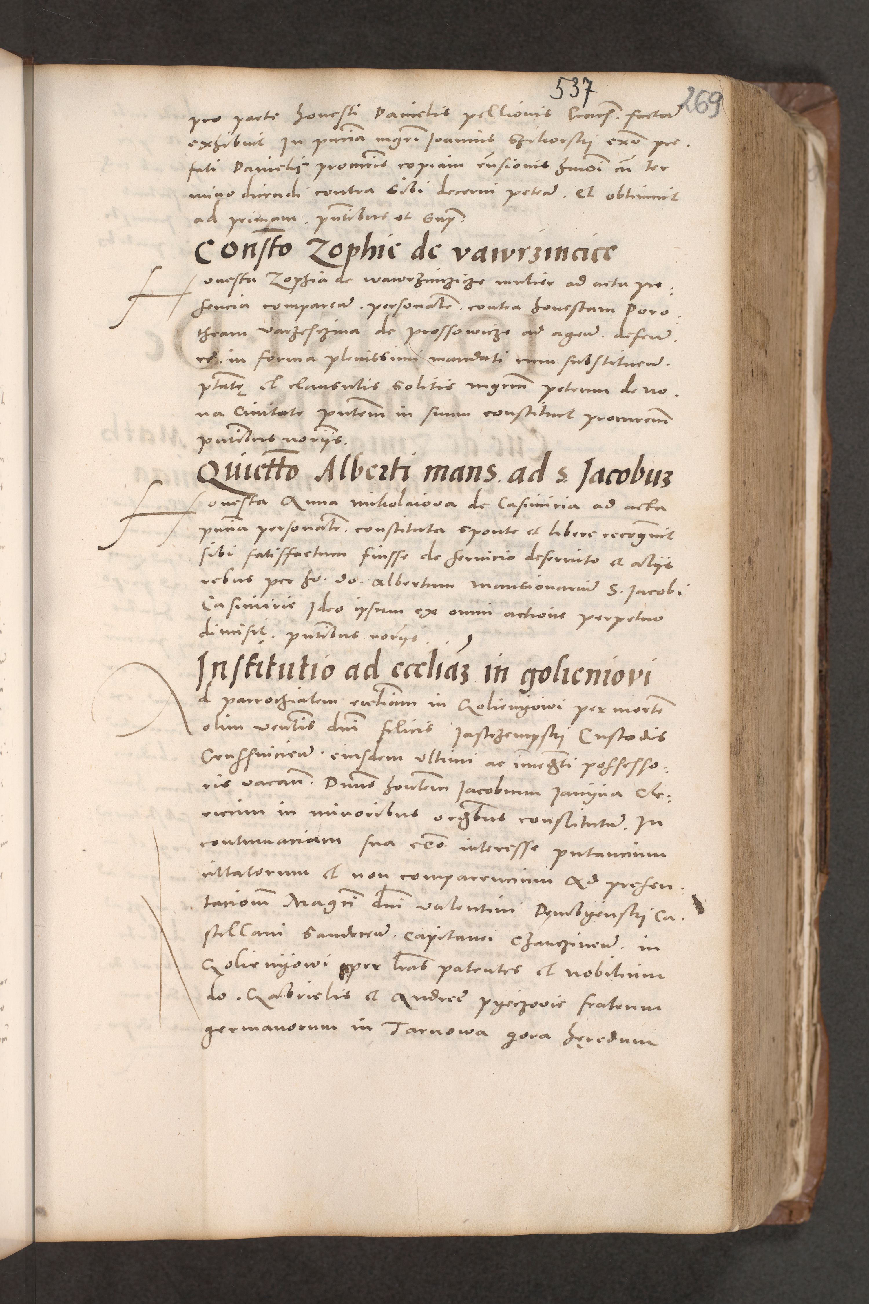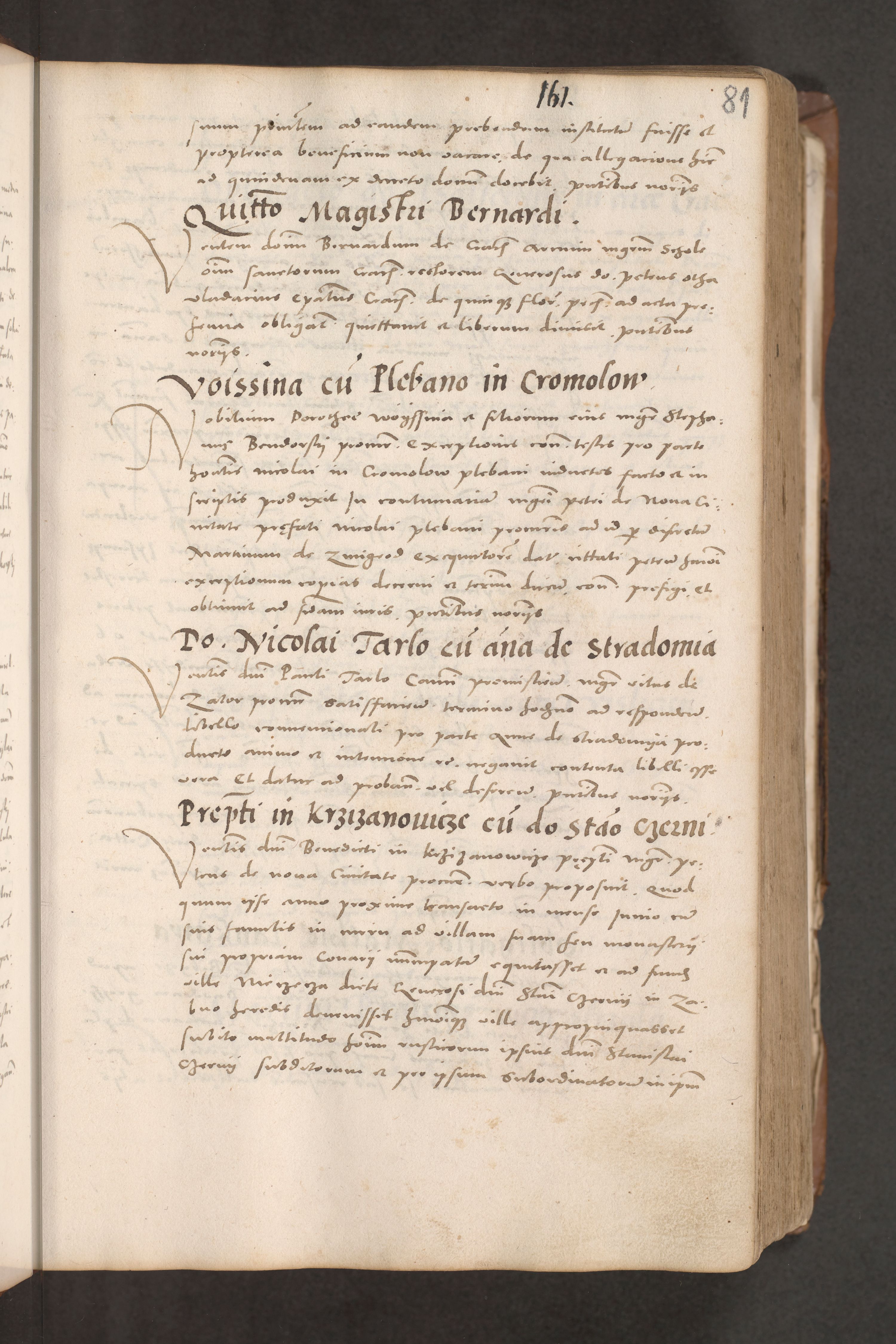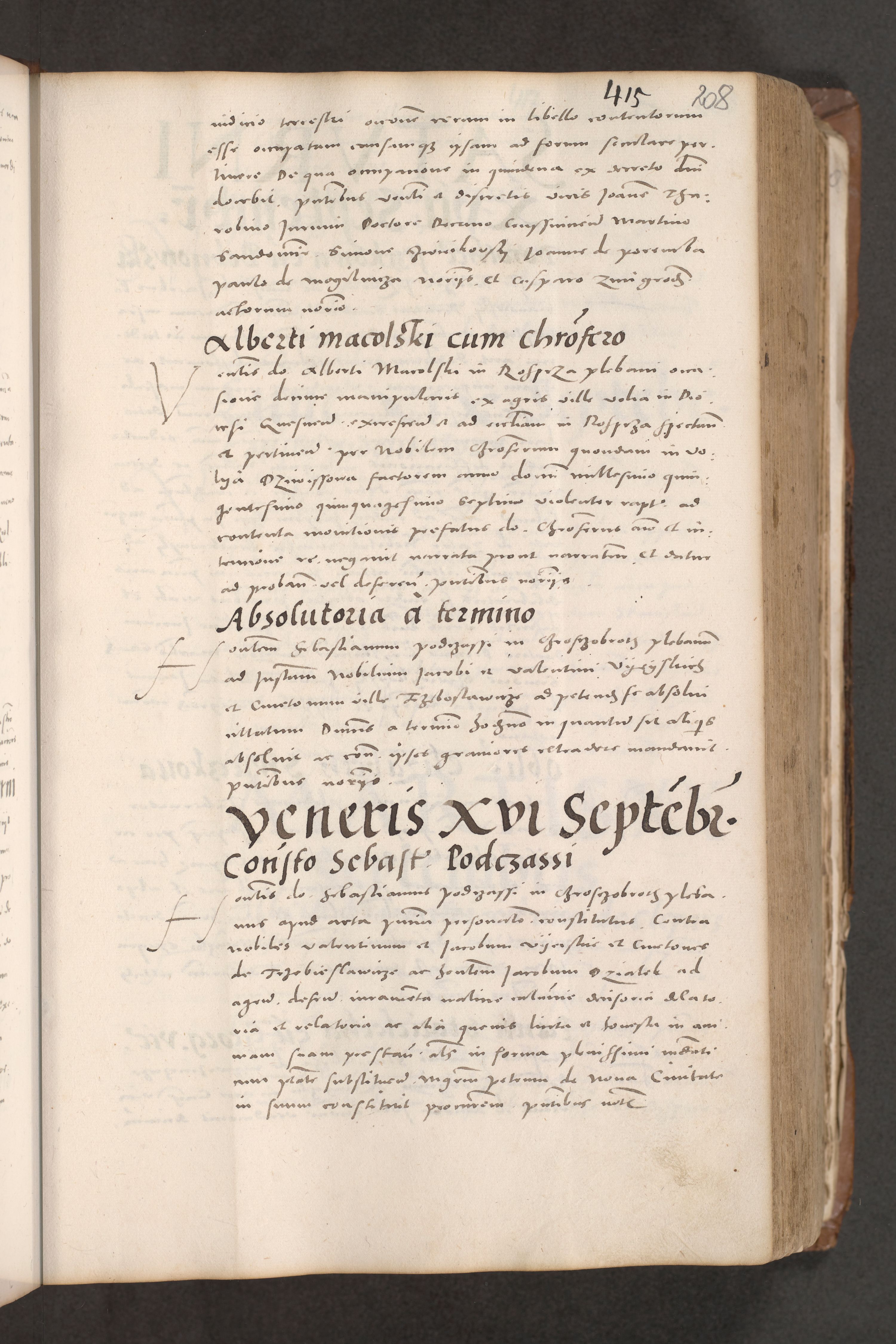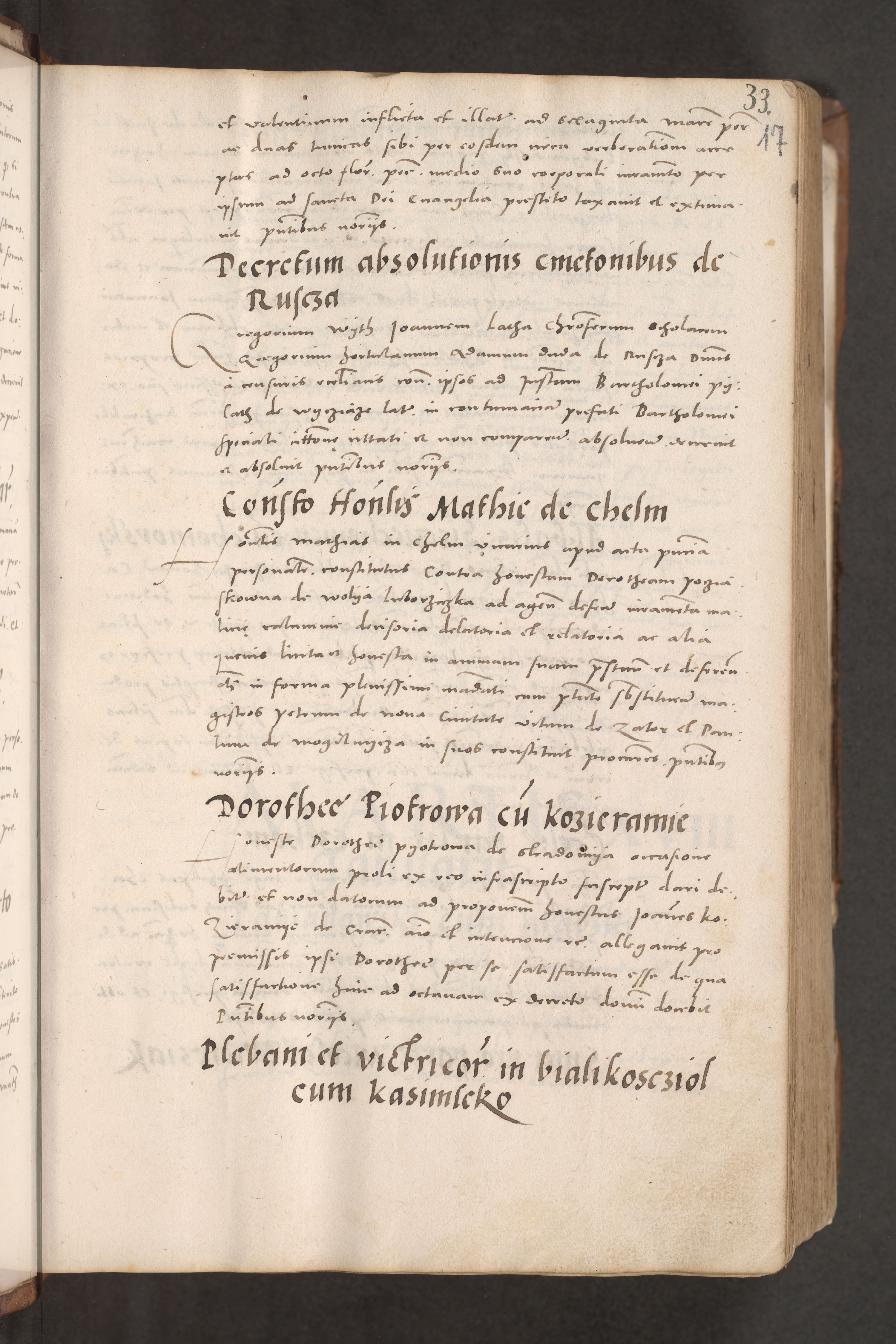 Acta actorum causarum, sententiarum tam diffinivarum quam interloquutoriarum, decretorum, obligationum, quietationum et constitutionum procuratorum coram reverendo domino Stanislao Szlomowski praeposito Calissieensi, archidiacono Sandecensi, canonico vicarioque in spiritualibus generali Cracoviensi ad annum Domini millesimum quingentesimum quinquagesimum octavum, cuius indicio prima, pontificatus sanctissimi domini nostri Pauli divina providencia pape quarti, anno illius tercio, feliciter sequuntur.