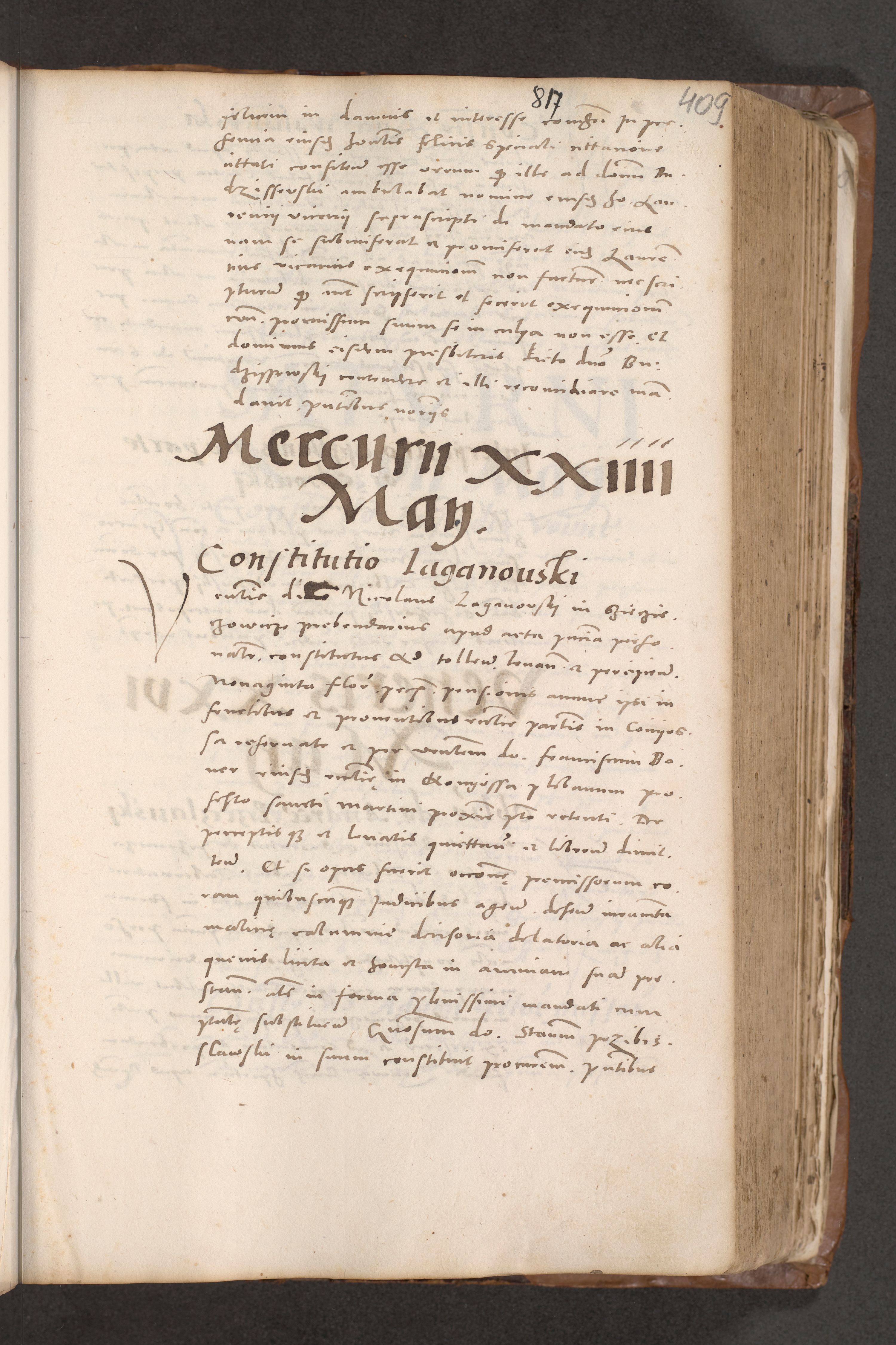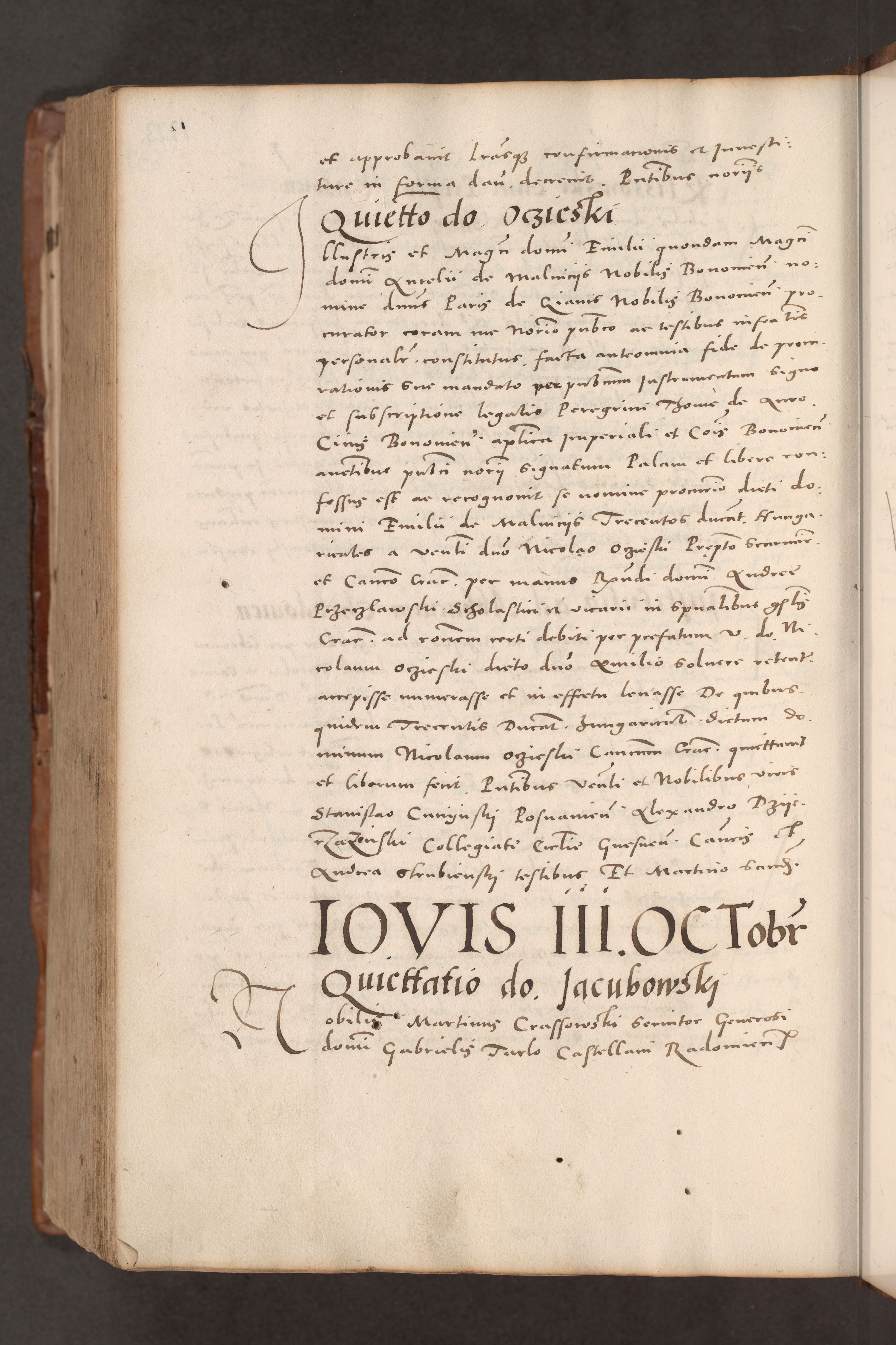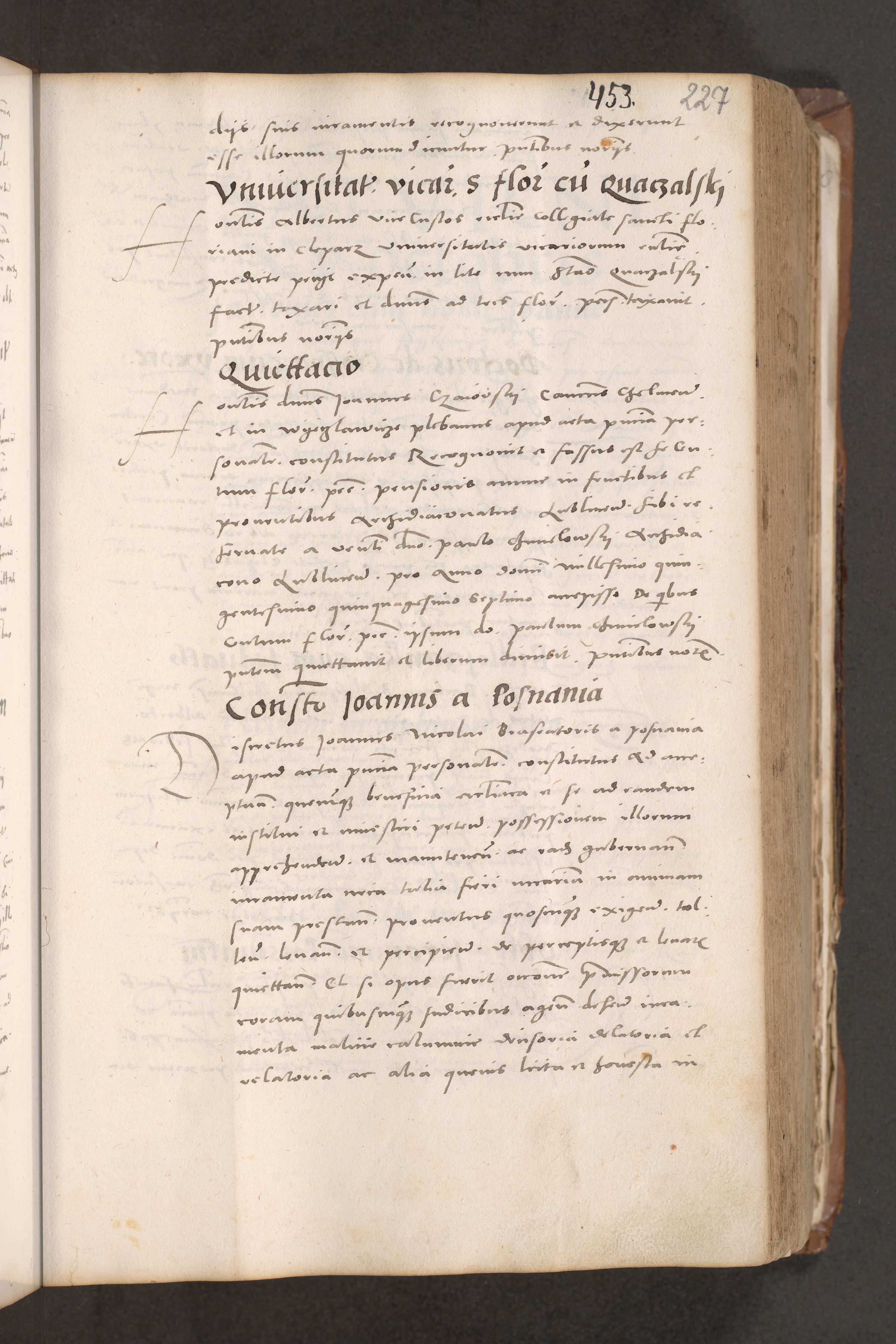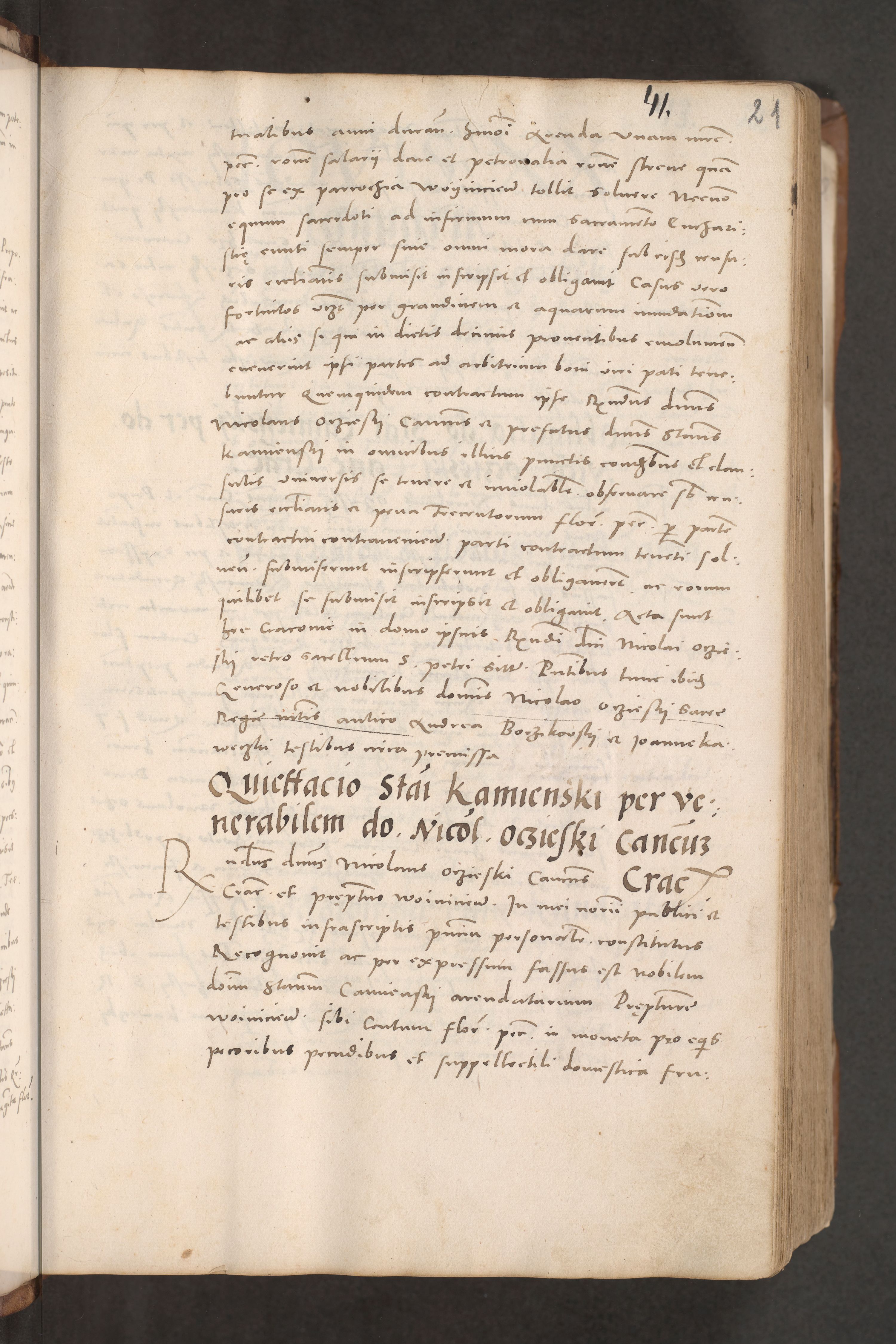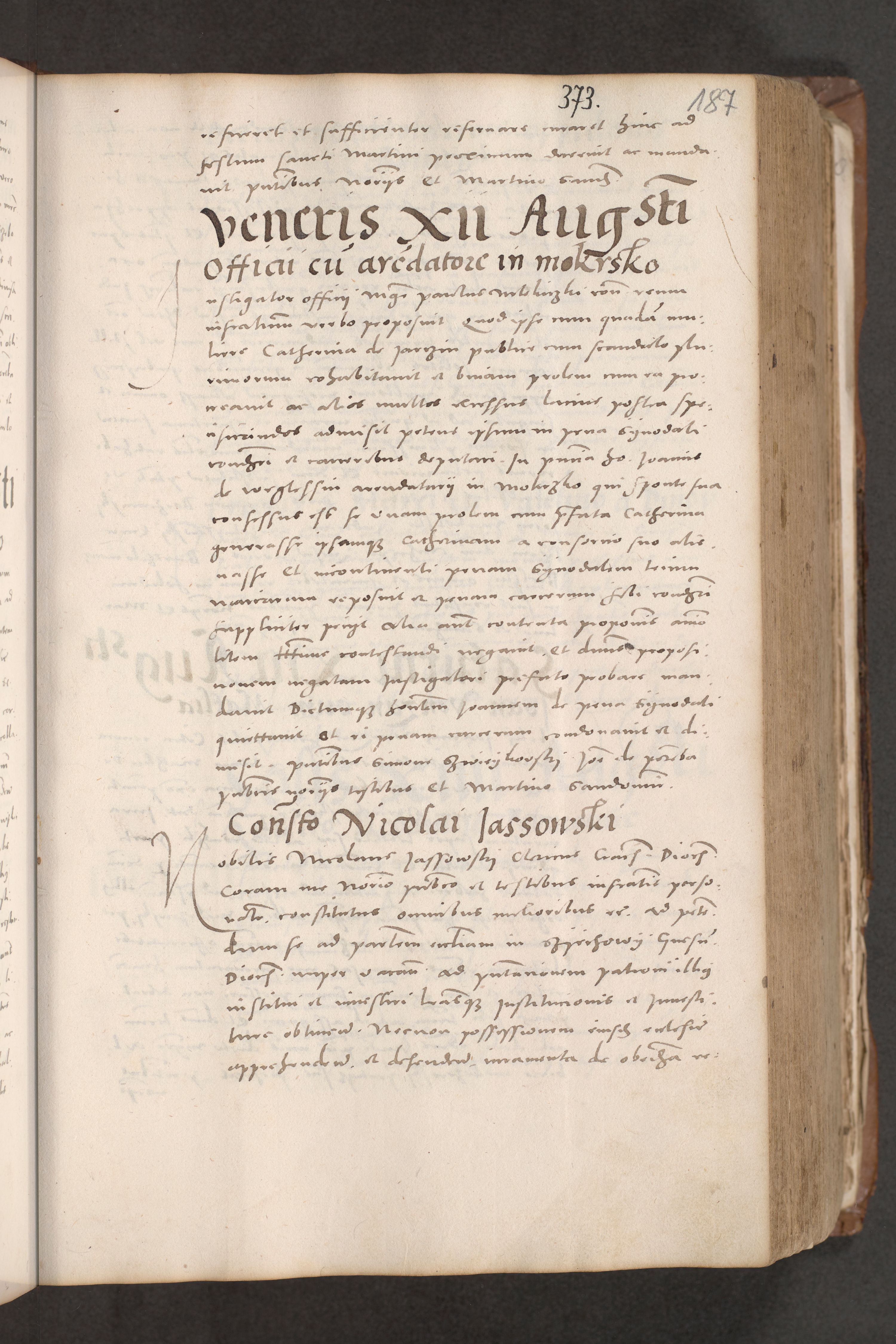 Acta actorum causarum, sententiarum tam diffinivarum quam interloquutoriarum, decretorum, obligationum, quietationum et constitutionum procuratorum coram reverendo domino Stanislao Szlomowski praeposito Calissieensi, archidiacono Sandecensi, canonico vicarioque in spiritualibus generali Cracoviensi ad annum Domini millesimum quingentesimum quinquagesimum octavum, cuius indicio prima, pontificatus sanctissimi domini nostri Pauli divina providencia pape quarti, anno illius tercio, feliciter sequuntur.