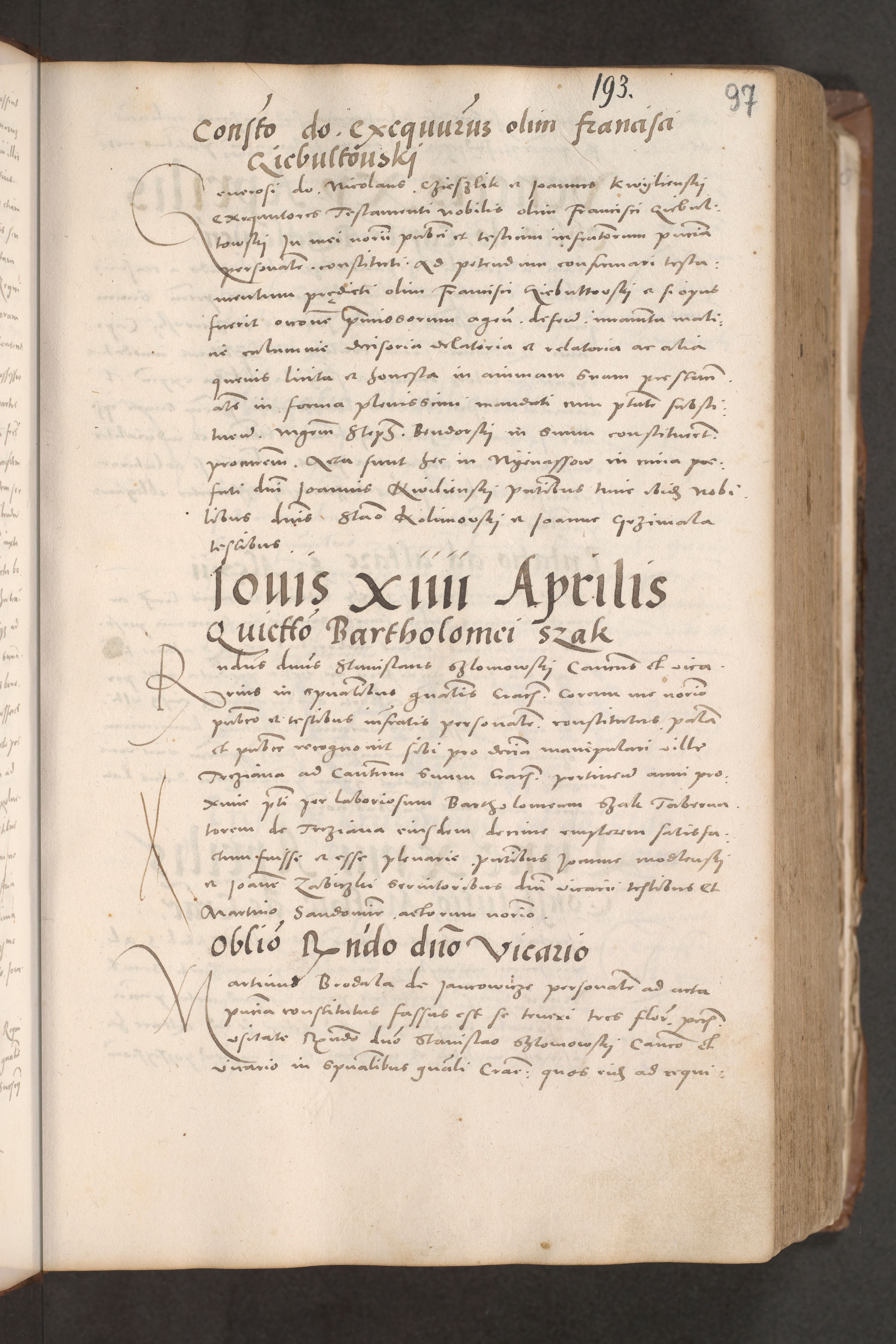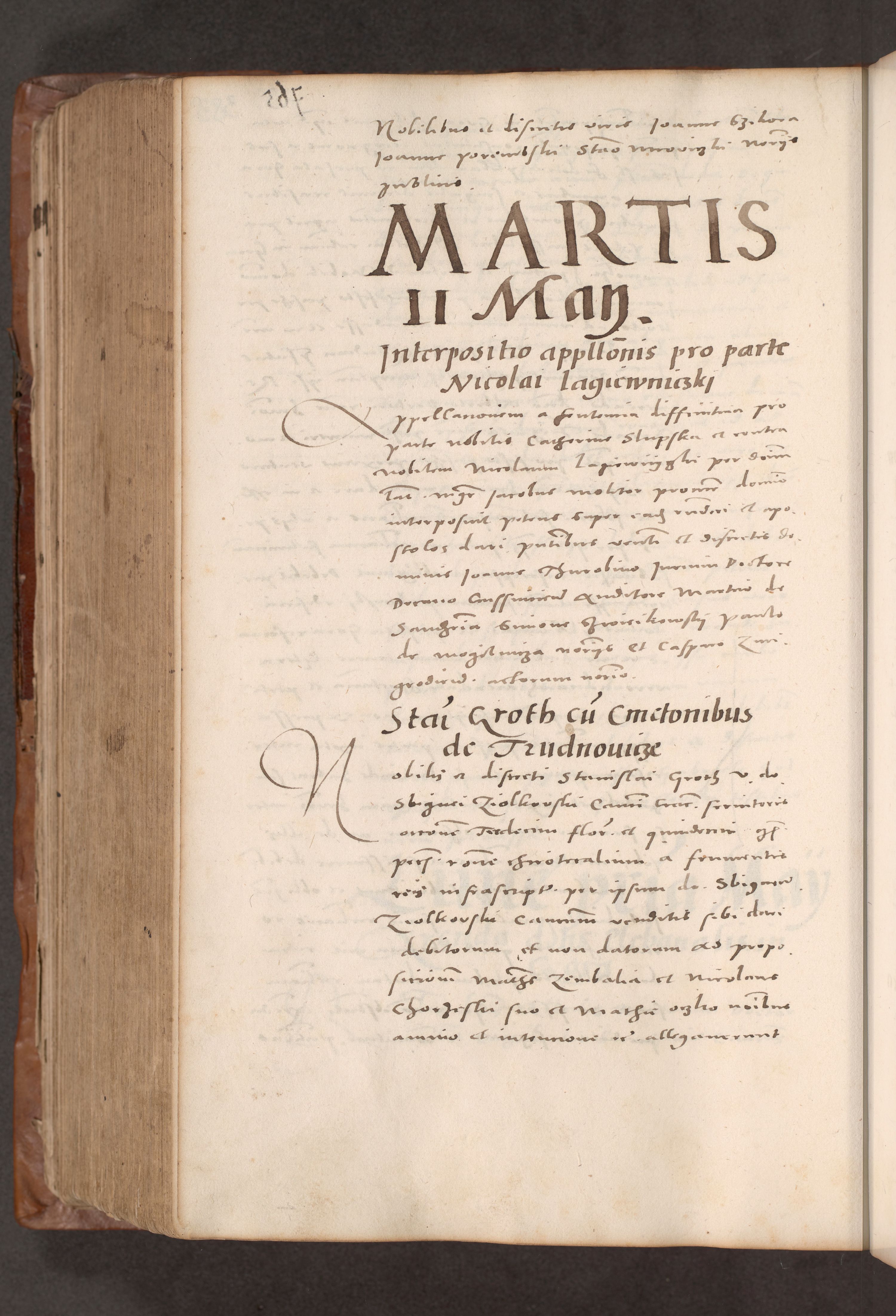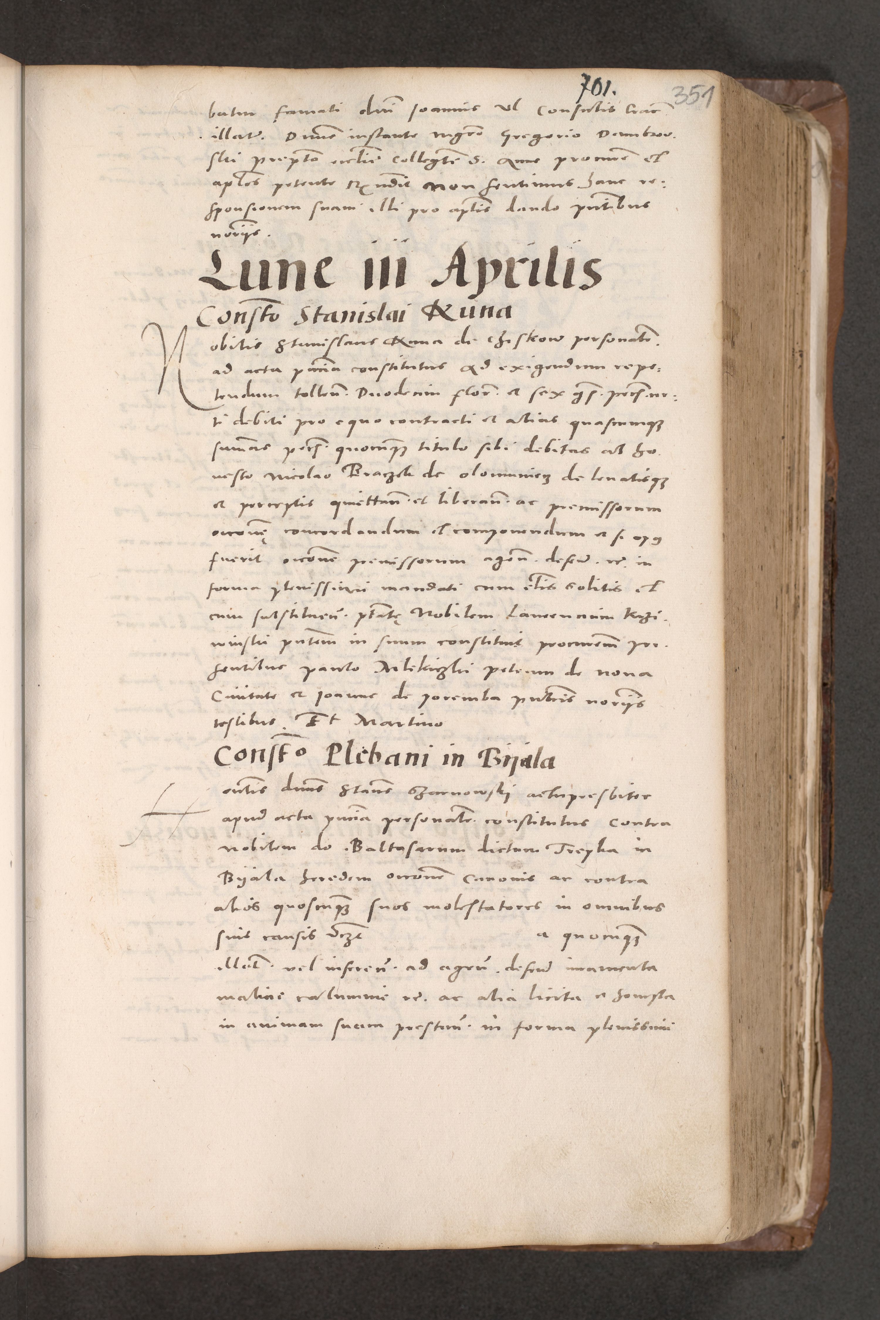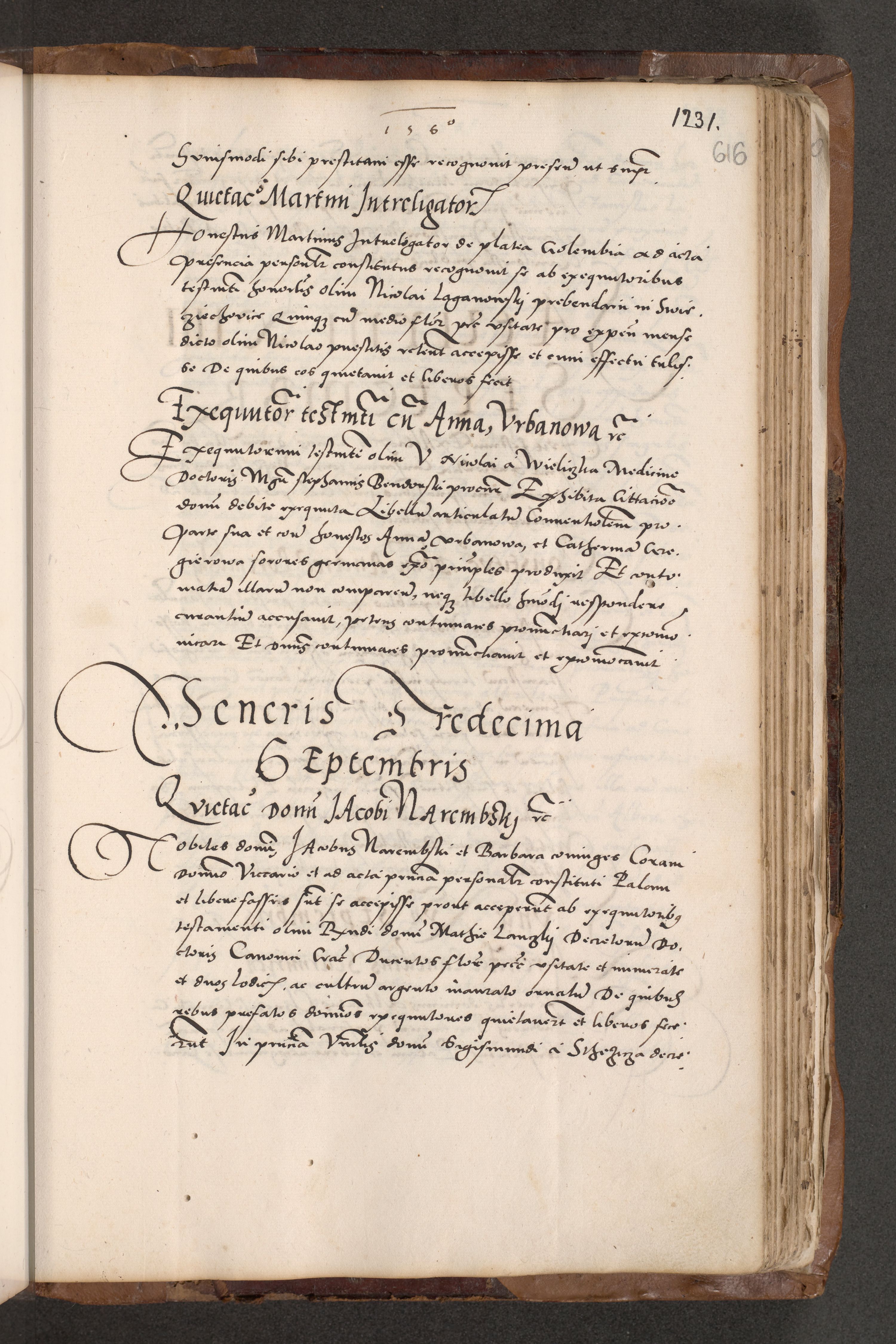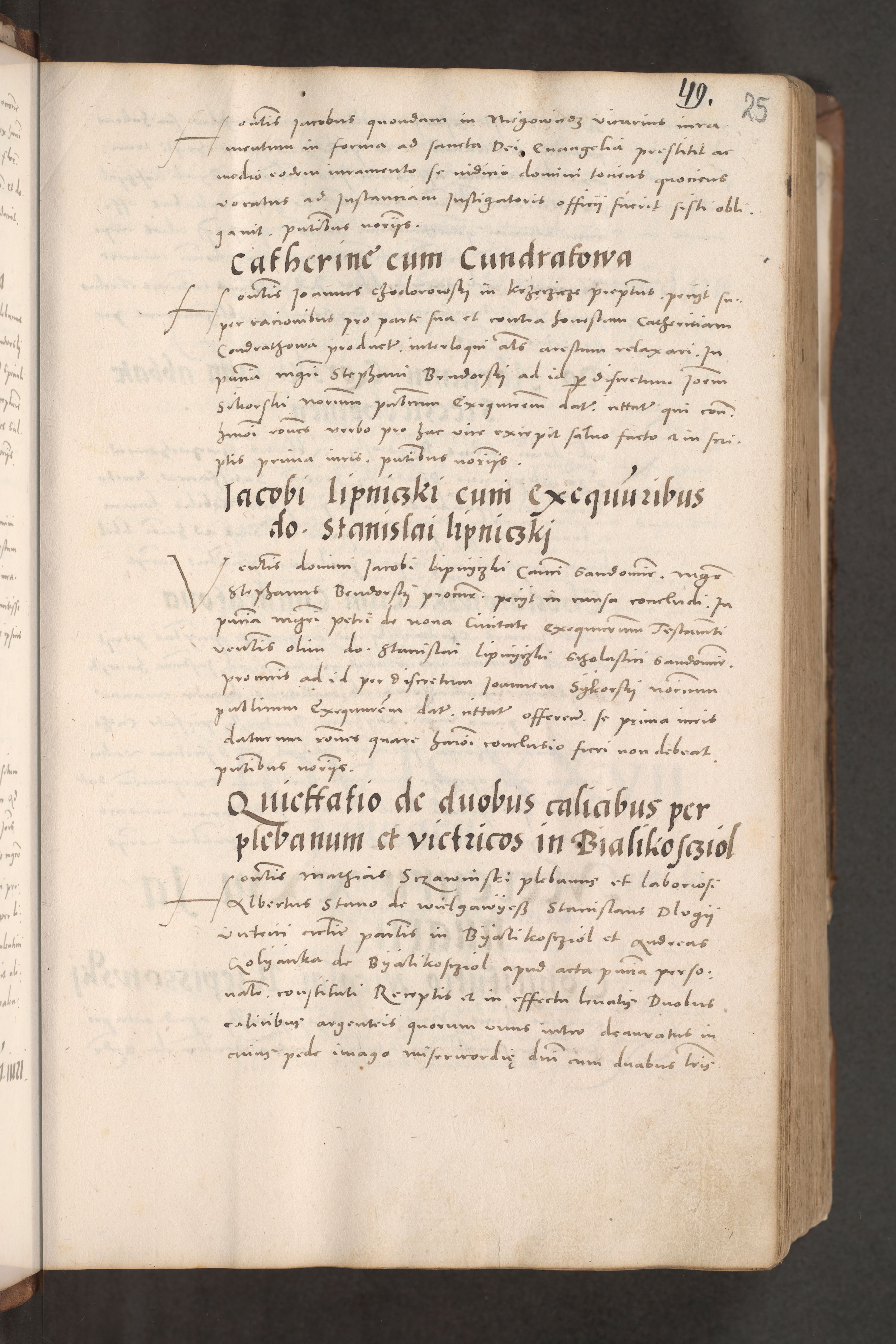 Acta actorum causarum, sententiarum tam diffinivarum quam interloquutoriarum, decretorum, obligationum, quietationum et constitutionum procuratorum coram reverendo domino Stanislao Szlomowski praeposito Calissieensi, archidiacono Sandecensi, canonico vicarioque in spiritualibus generali Cracoviensi ad annum Domini millesimum quingentesimum quinquagesimum octavum, cuius indicio prima, pontificatus sanctissimi domini nostri Pauli divina providencia pape quarti, anno illius tercio, feliciter sequuntur.