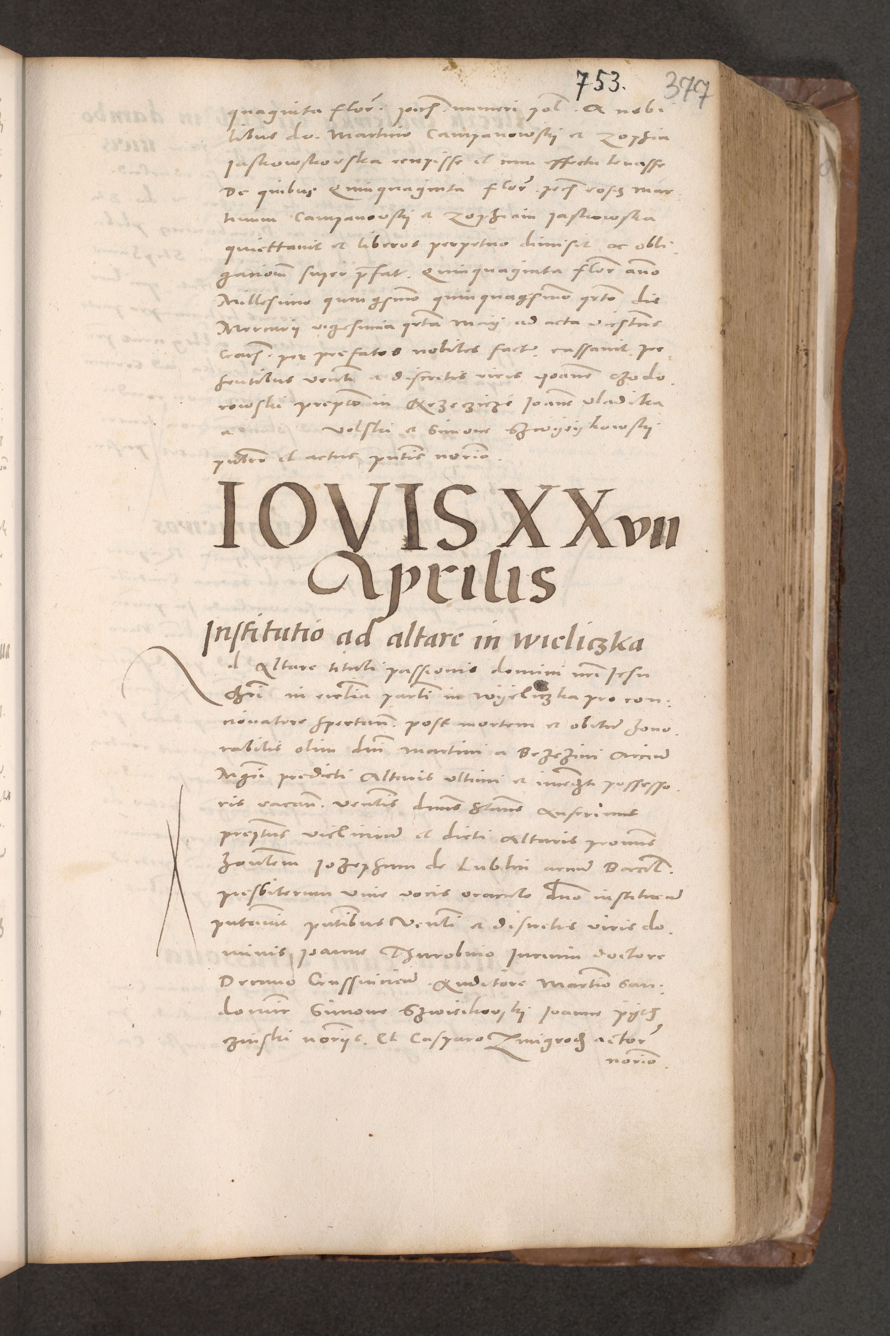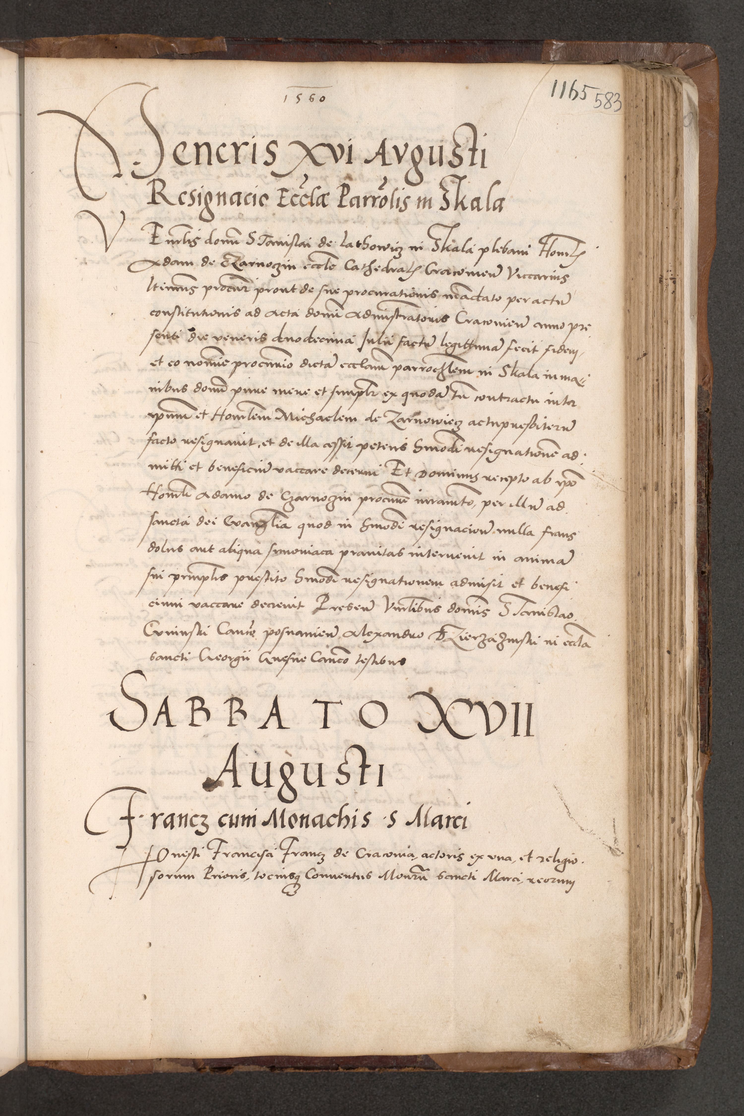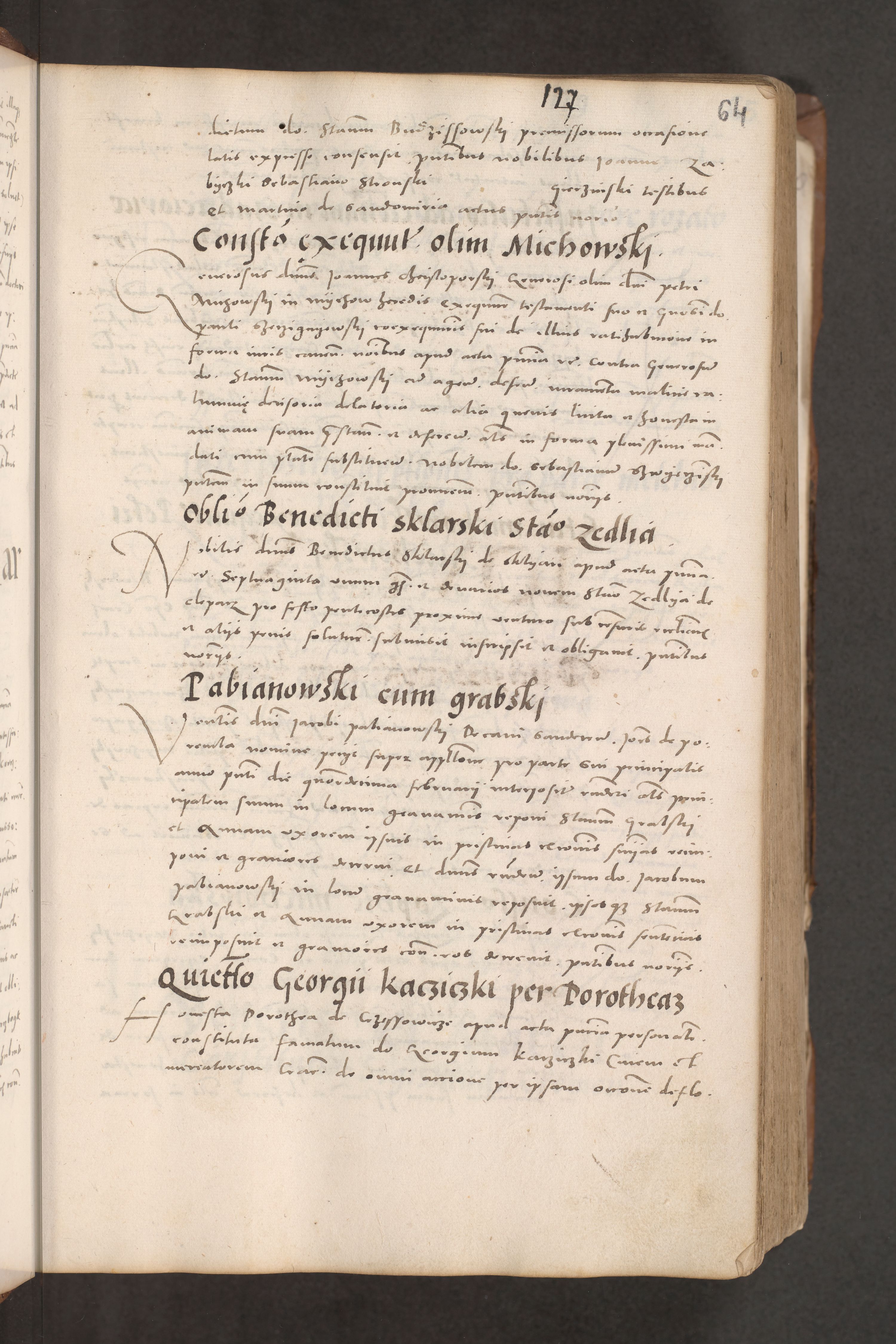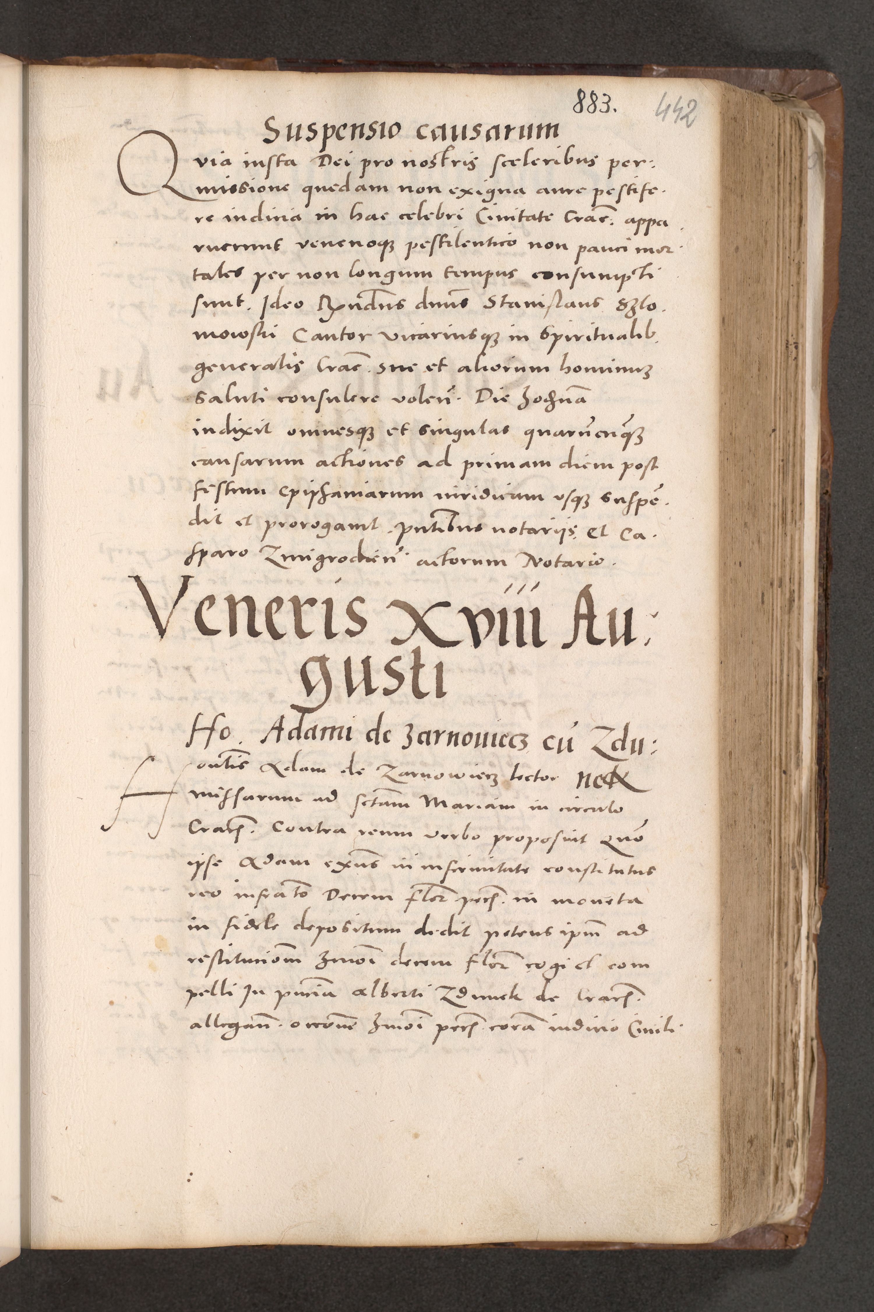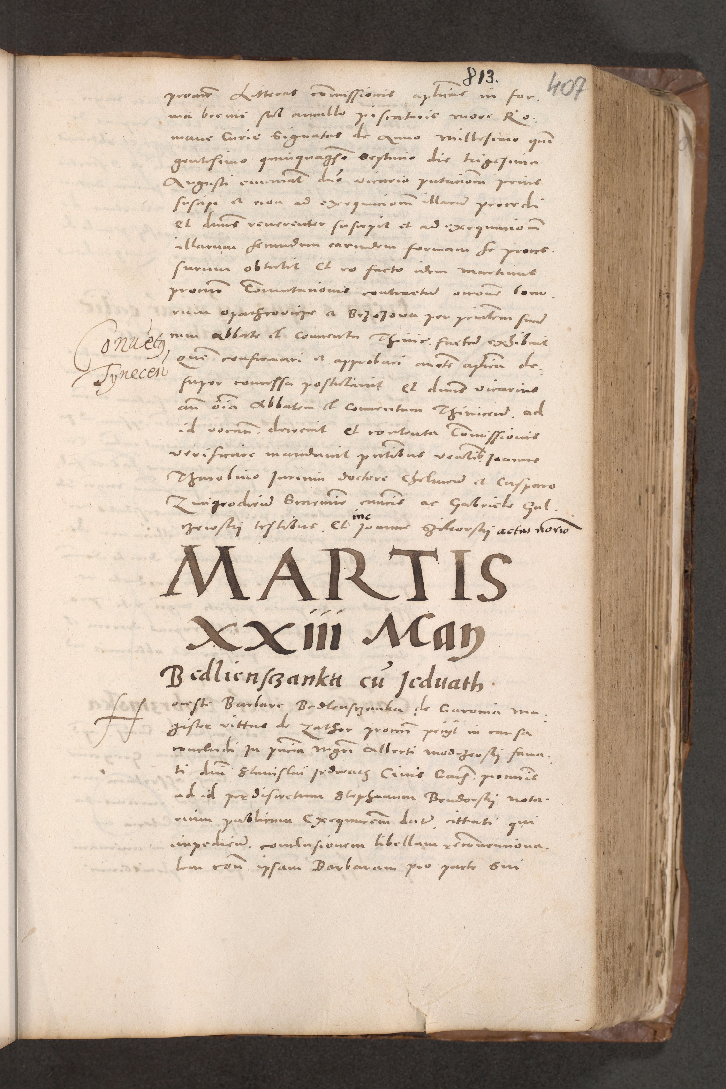 Acta actorum causarum, sententiarum tam diffinivarum quam interloquutoriarum, decretorum, obligationum, quietationum et constitutionum procuratorum coram reverendo domino Stanislao Szlomowski praeposito Calissieensi, archidiacono Sandecensi, canonico vicarioque in spiritualibus generali Cracoviensi ad annum Domini millesimum quingentesimum quinquagesimum octavum, cuius indicio prima, pontificatus sanctissimi domini nostri Pauli divina providencia pape quarti, anno illius tercio, feliciter sequuntur.