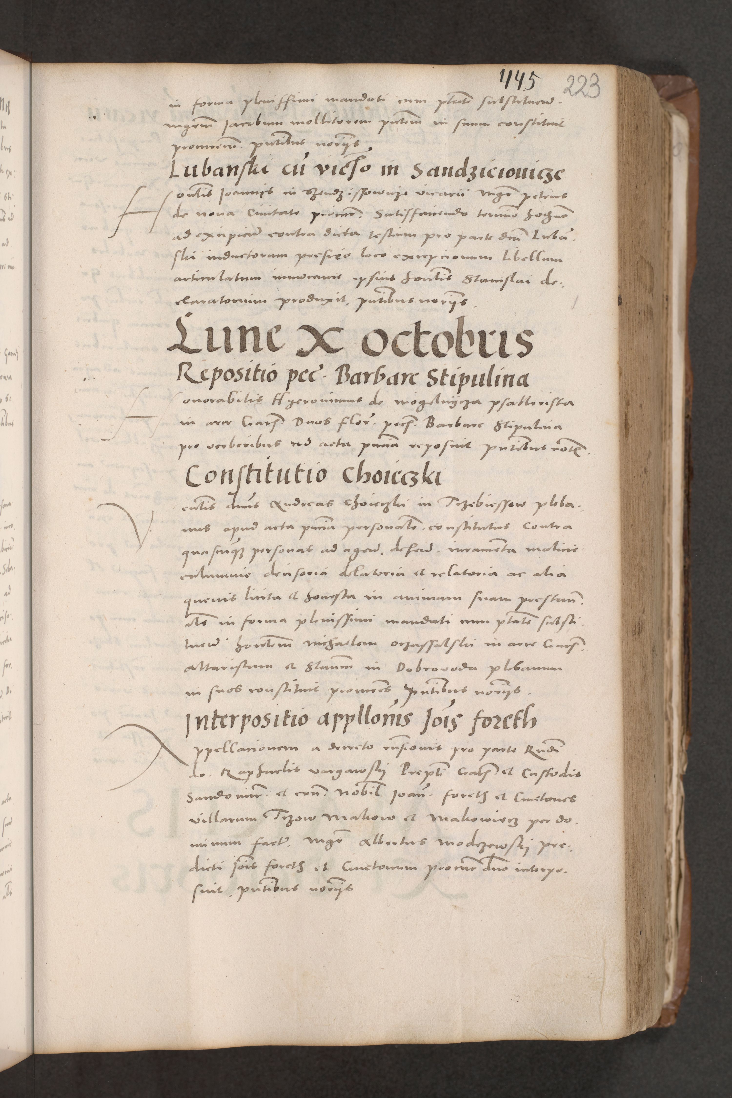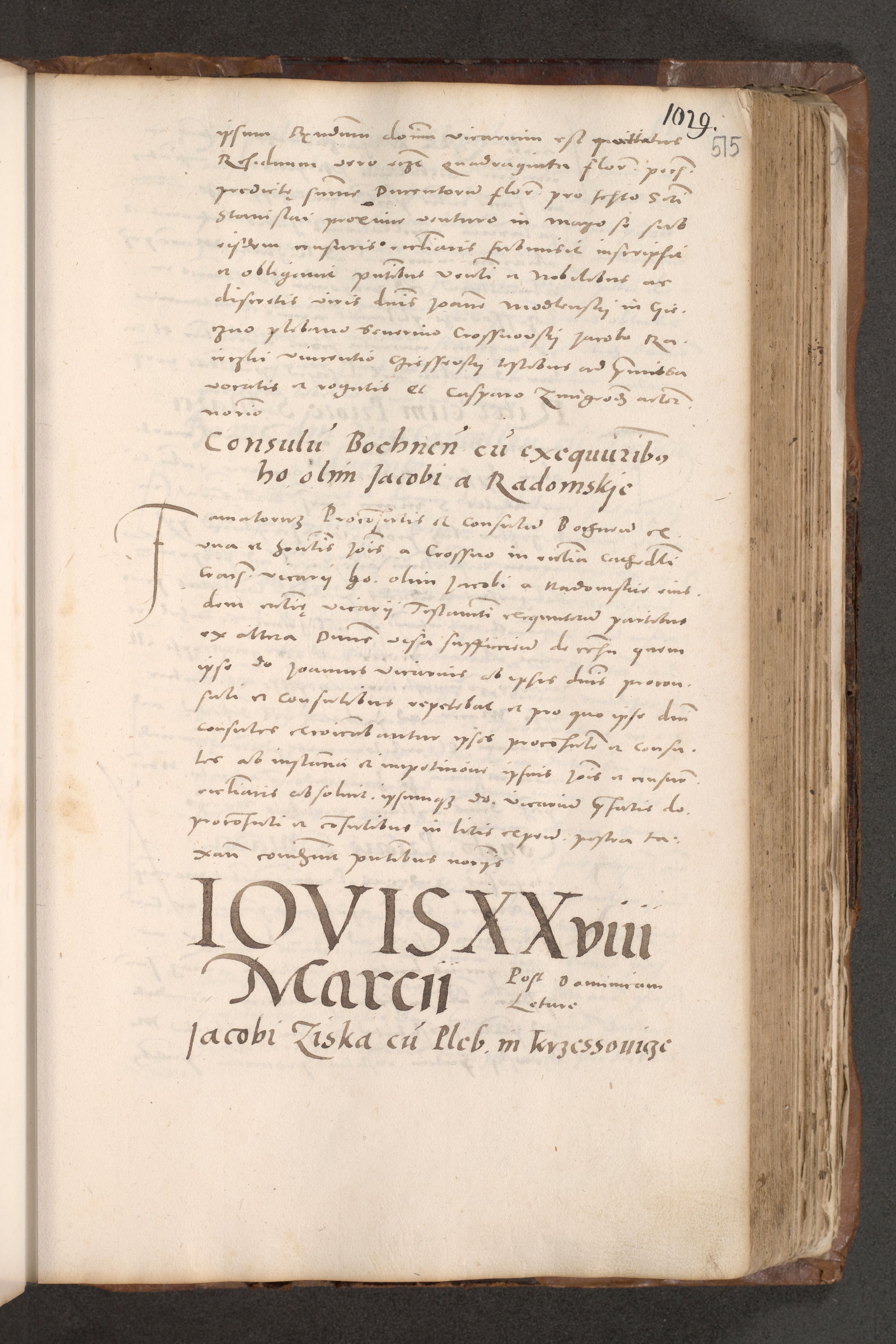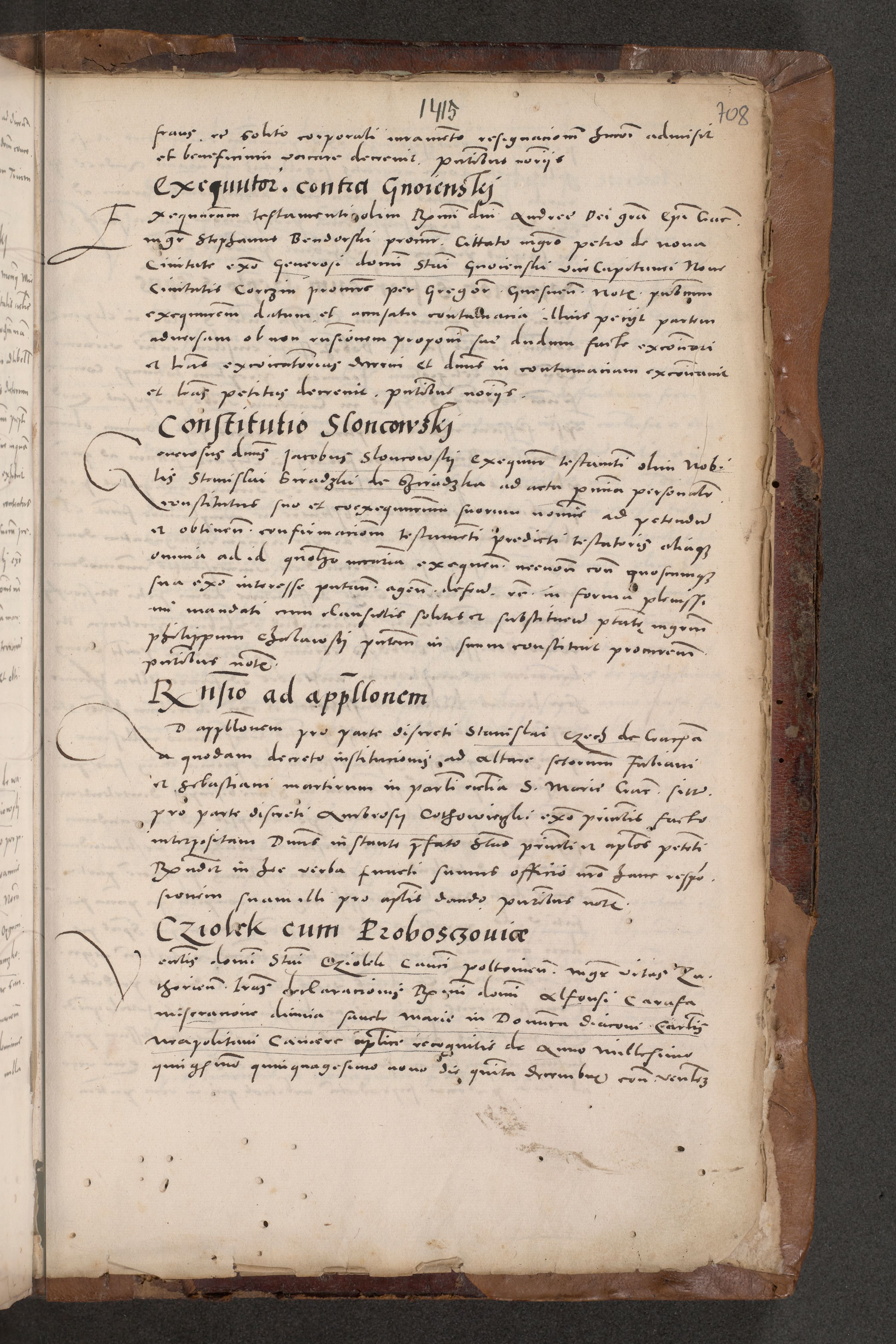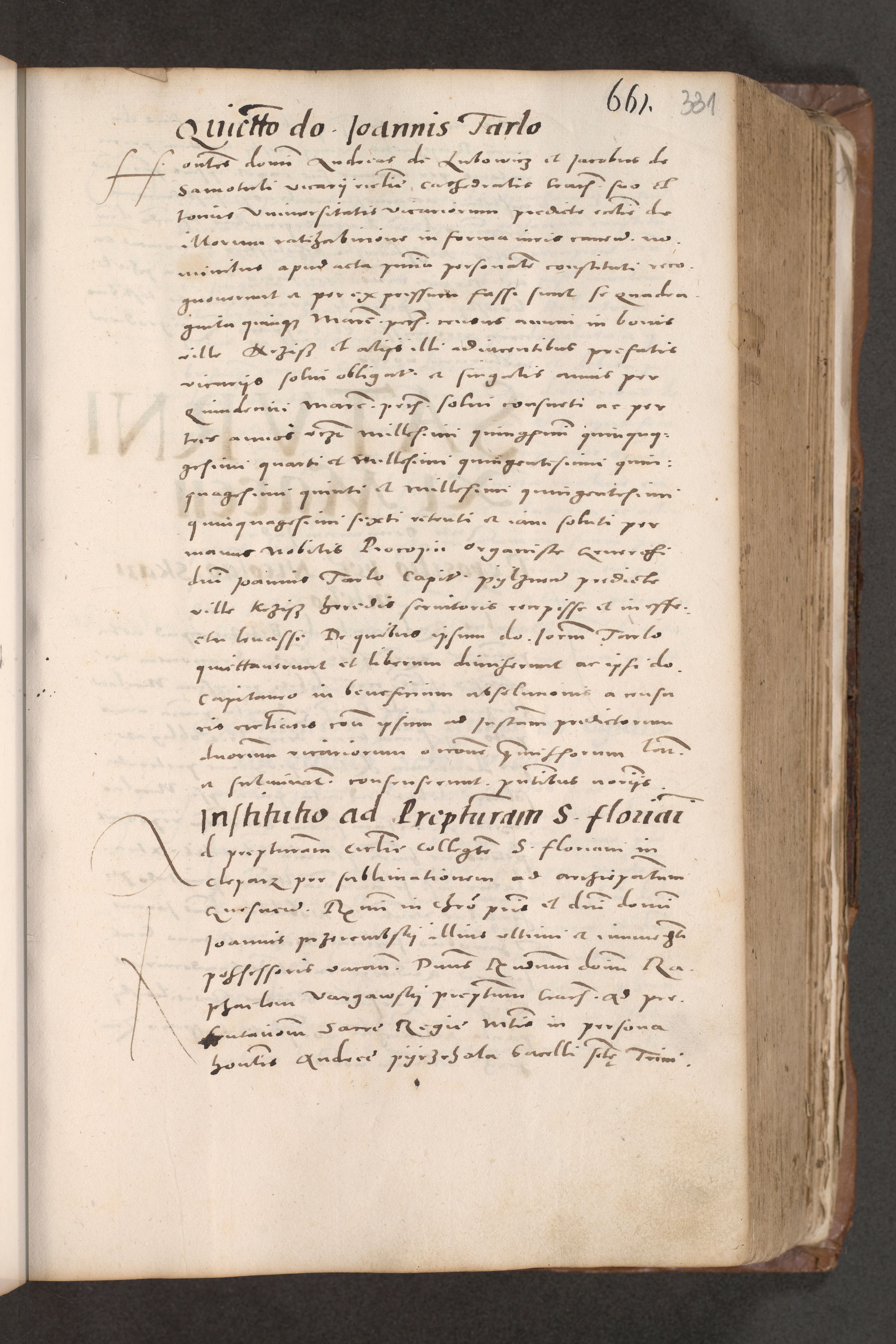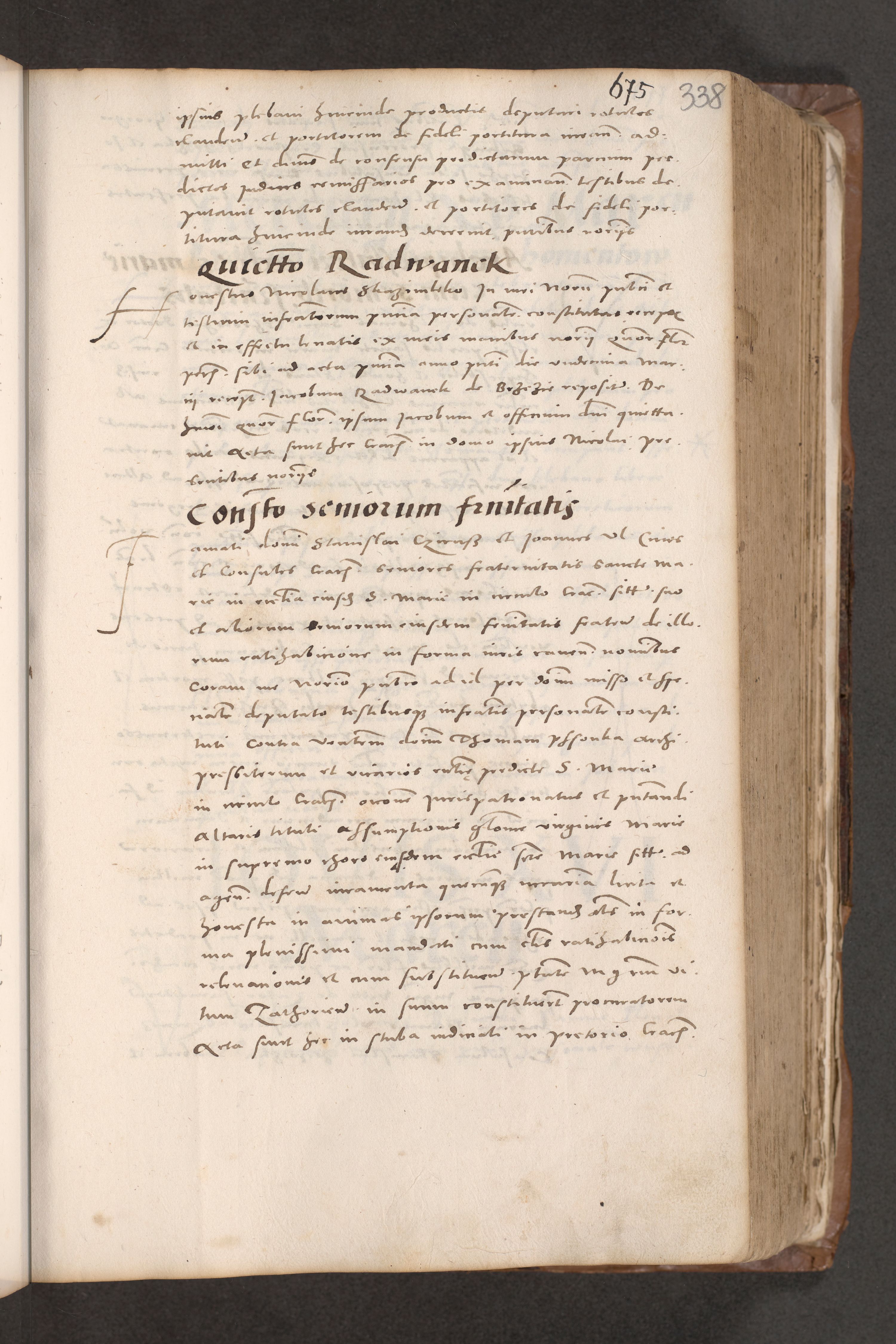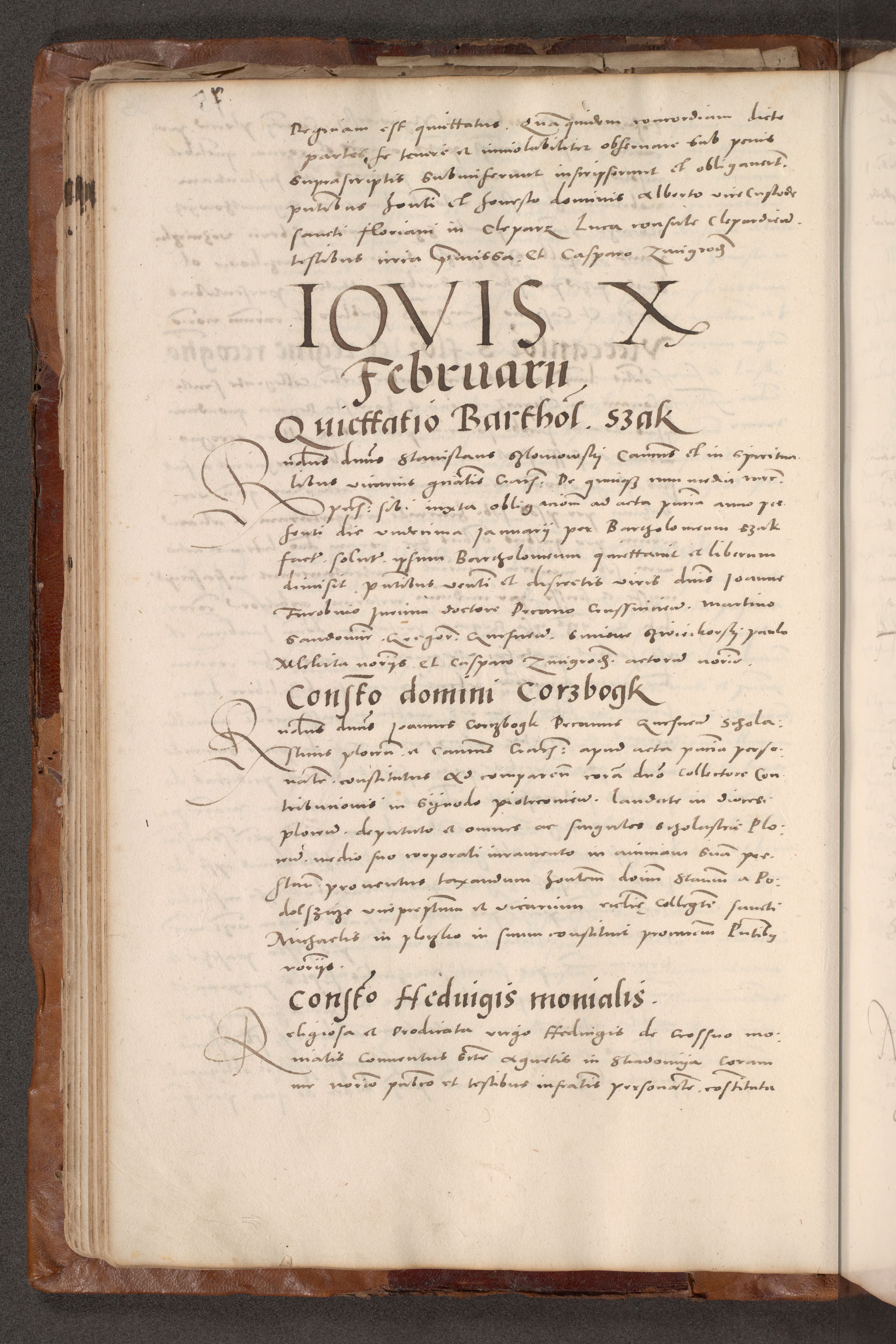 Acta actorum causarum, sententiarum tam diffinivarum quam interloquutoriarum, decretorum, obligationum, quietationum et constitutionum procuratorum coram reverendo domino Stanislao Szlomowski praeposito Calissieensi, archidiacono Sandecensi, canonico vicarioque in spiritualibus generali Cracoviensi ad annum Domini millesimum quingentesimum quinquagesimum octavum, cuius indicio prima, pontificatus sanctissimi domini nostri Pauli divina providencia pape quarti, anno illius tercio, feliciter sequuntur.