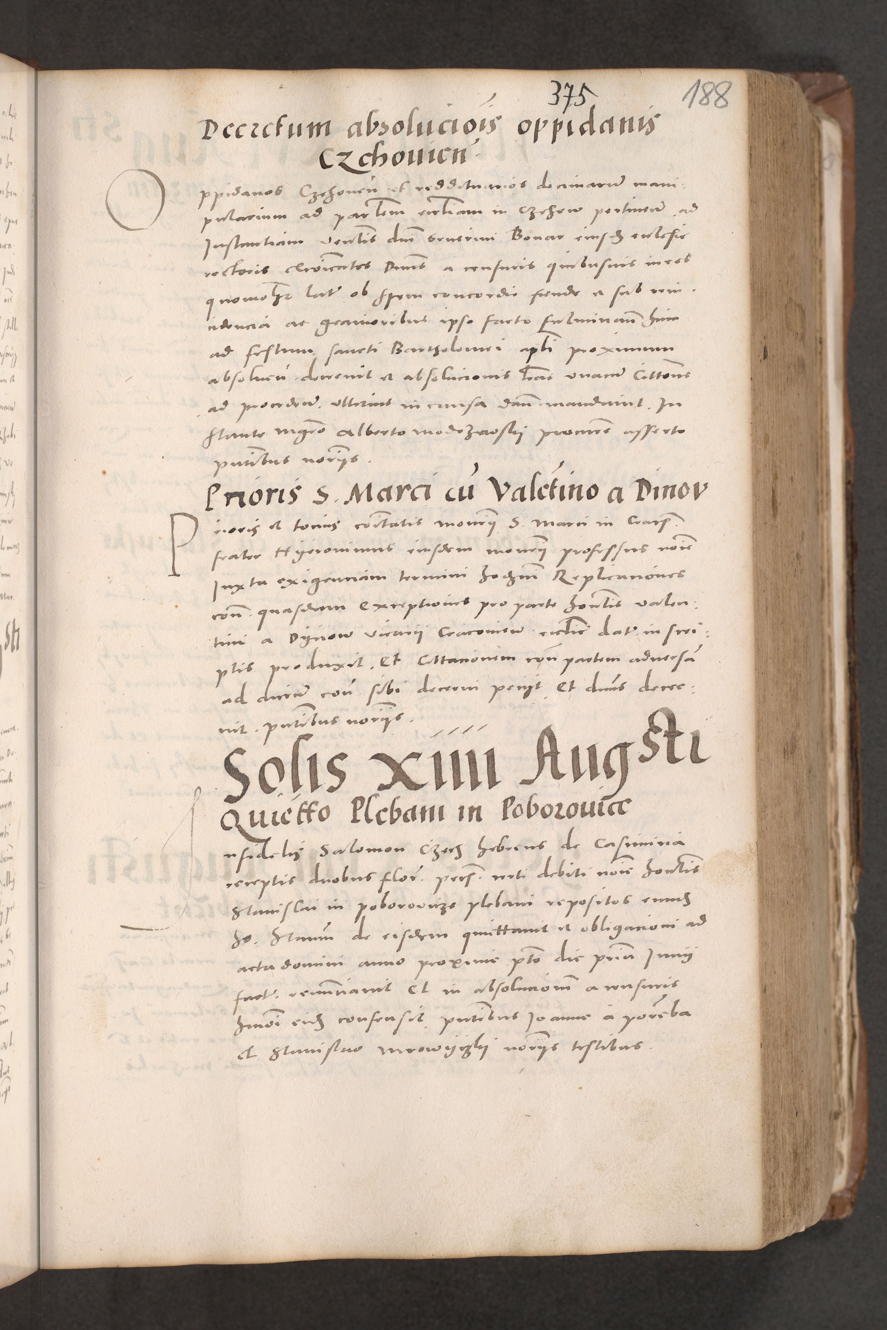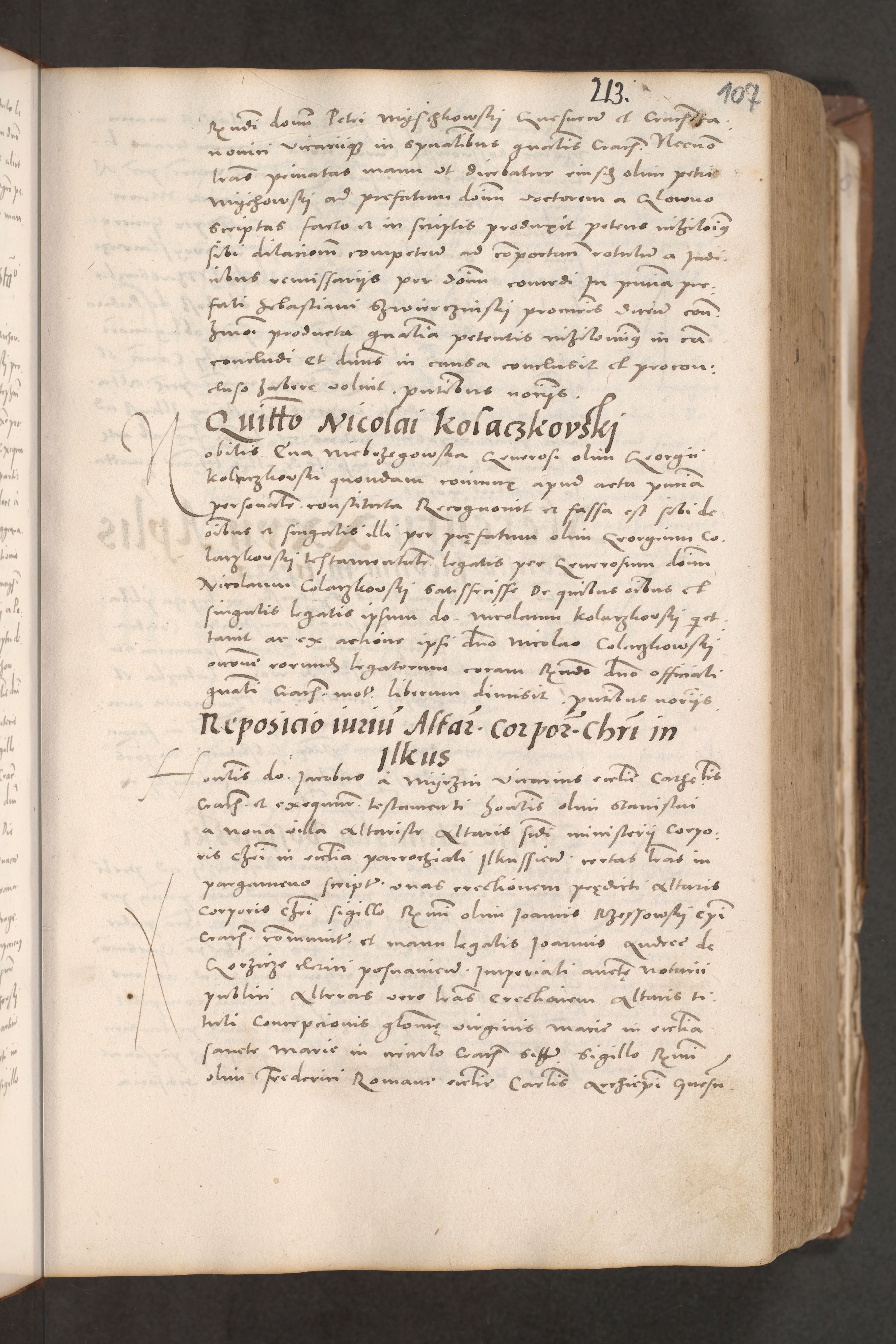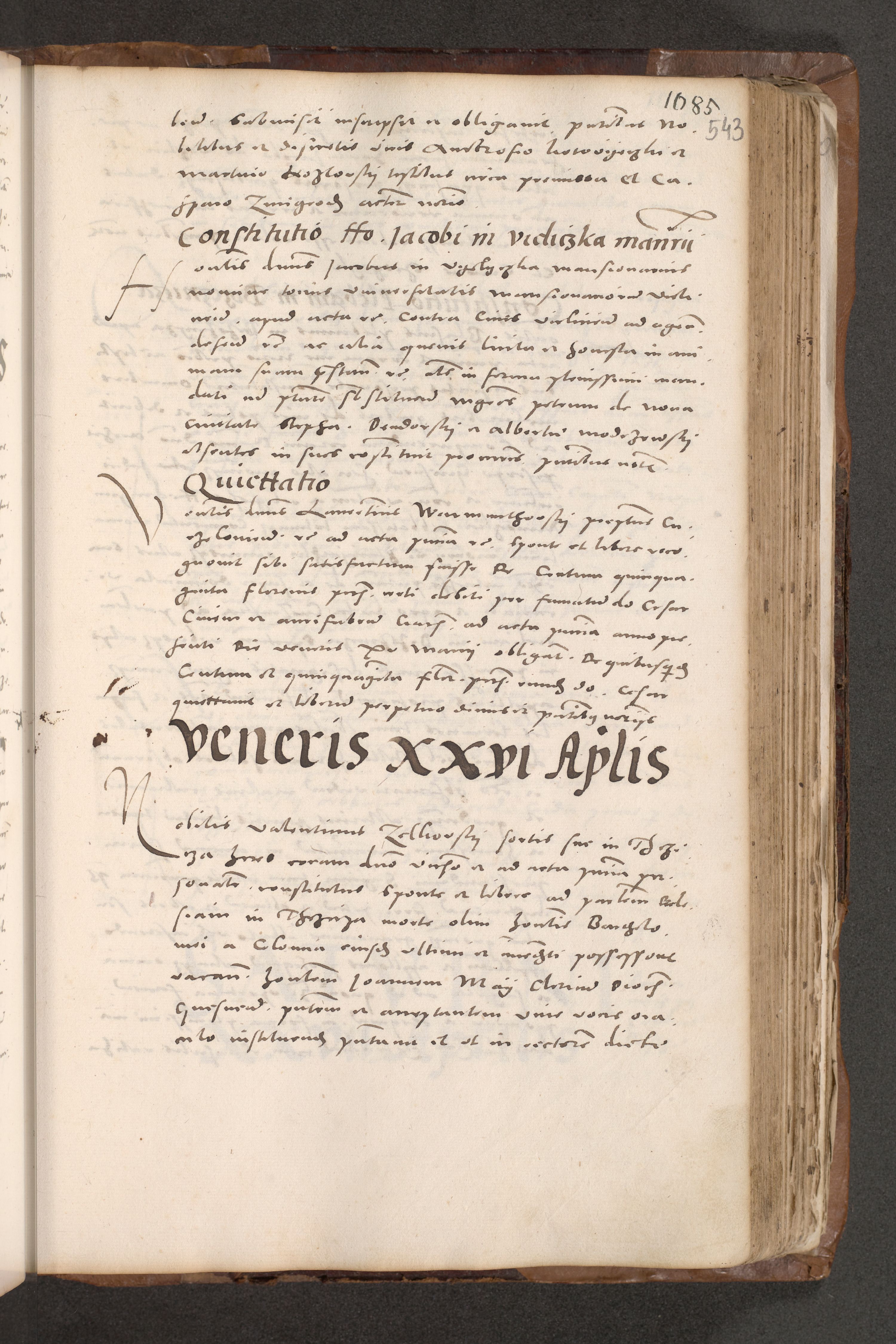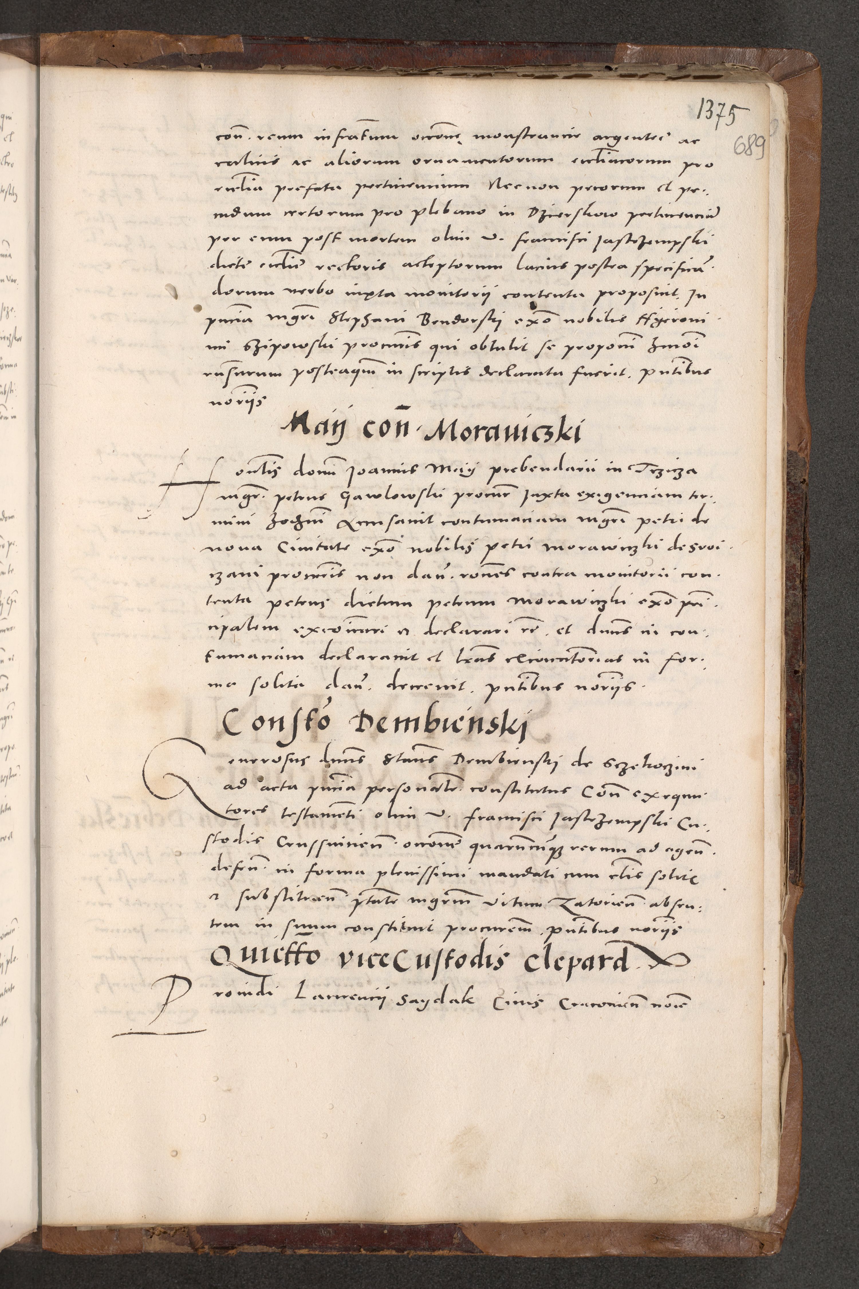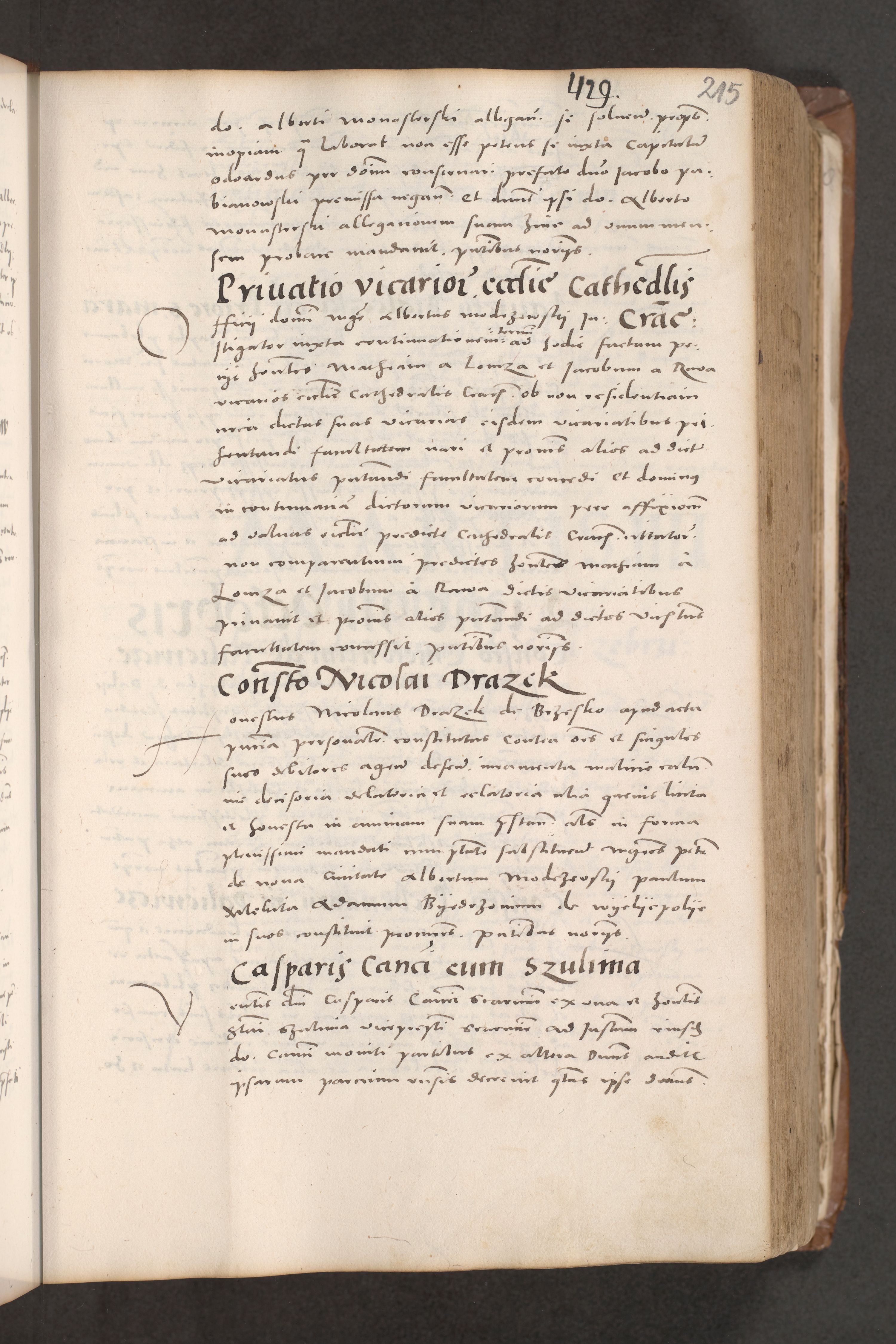 Acta actorum causarum, sententiarum tam diffinivarum quam interloquutoriarum, decretorum, obligationum, quietationum et constitutionum procuratorum coram reverendo domino Stanislao Szlomowski praeposito Calissieensi, archidiacono Sandecensi, canonico vicarioque in spiritualibus generali Cracoviensi ad annum Domini millesimum quingentesimum quinquagesimum octavum, cuius indicio prima, pontificatus sanctissimi domini nostri Pauli divina providencia pape quarti, anno illius tercio, feliciter sequuntur.