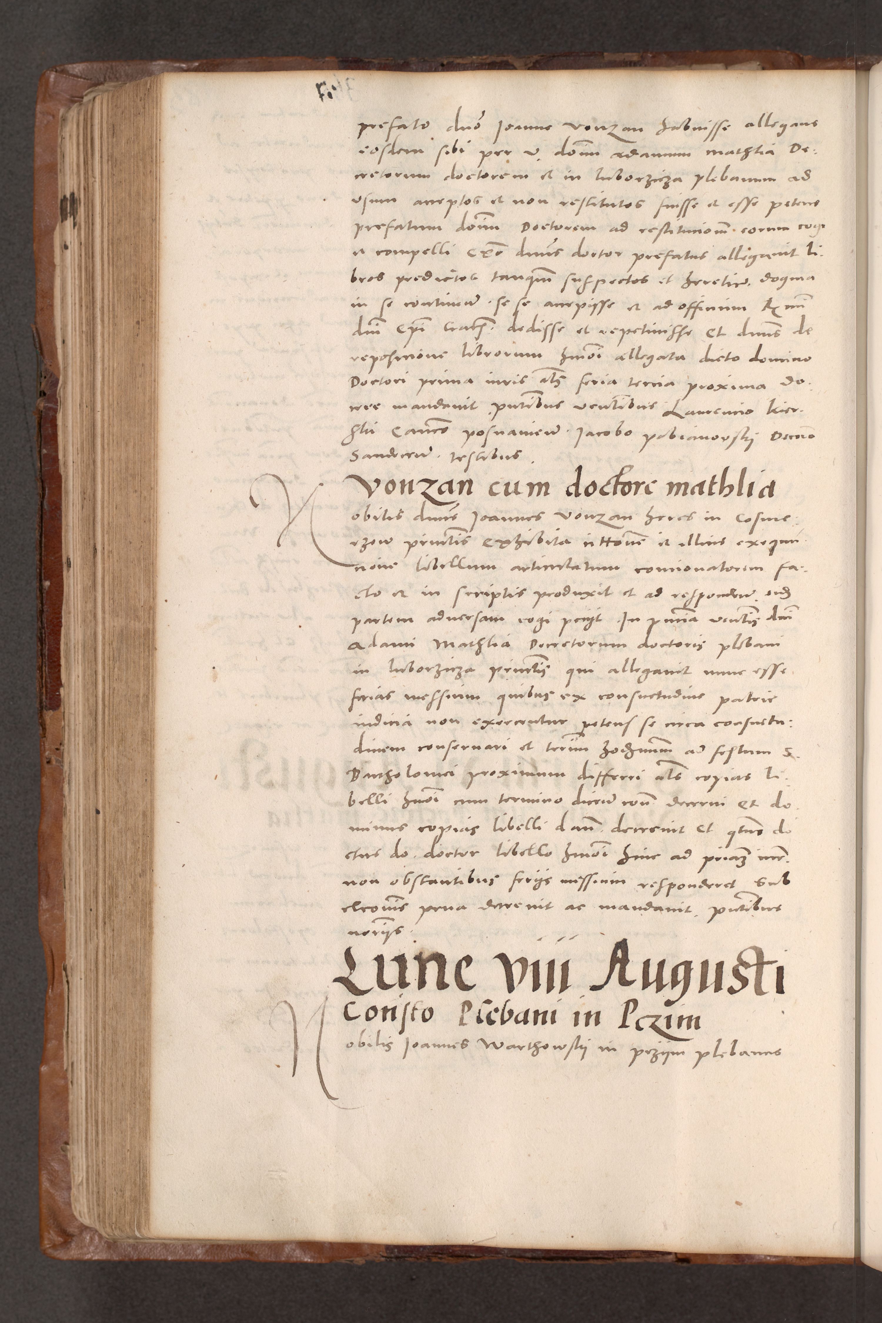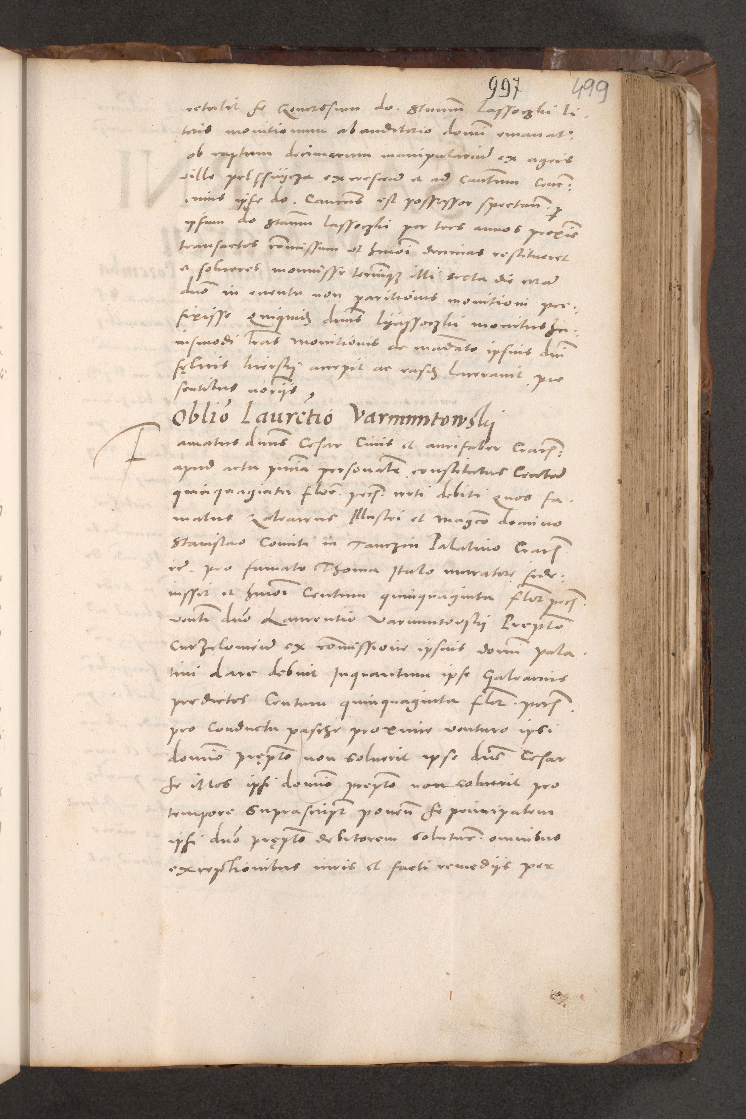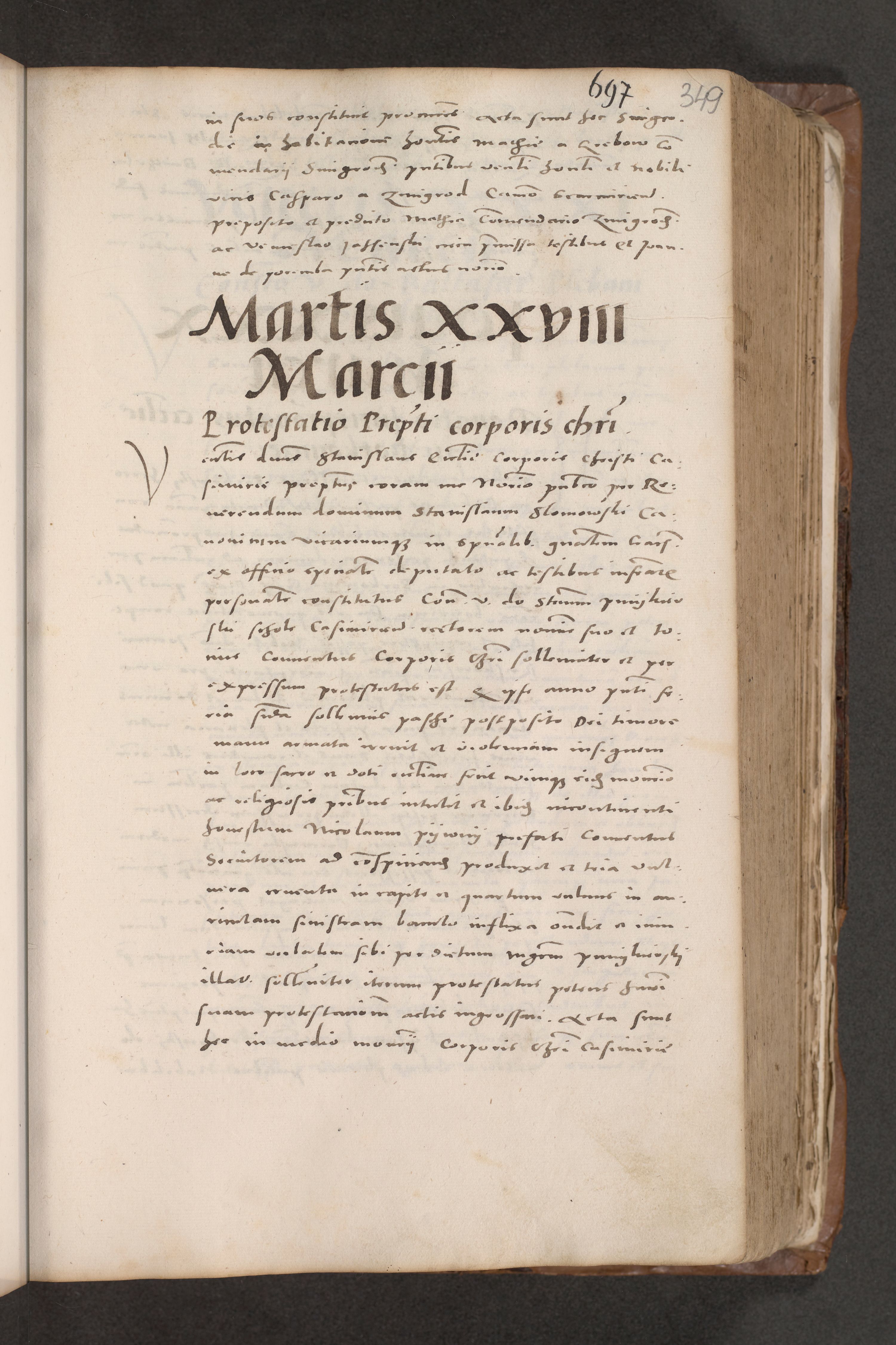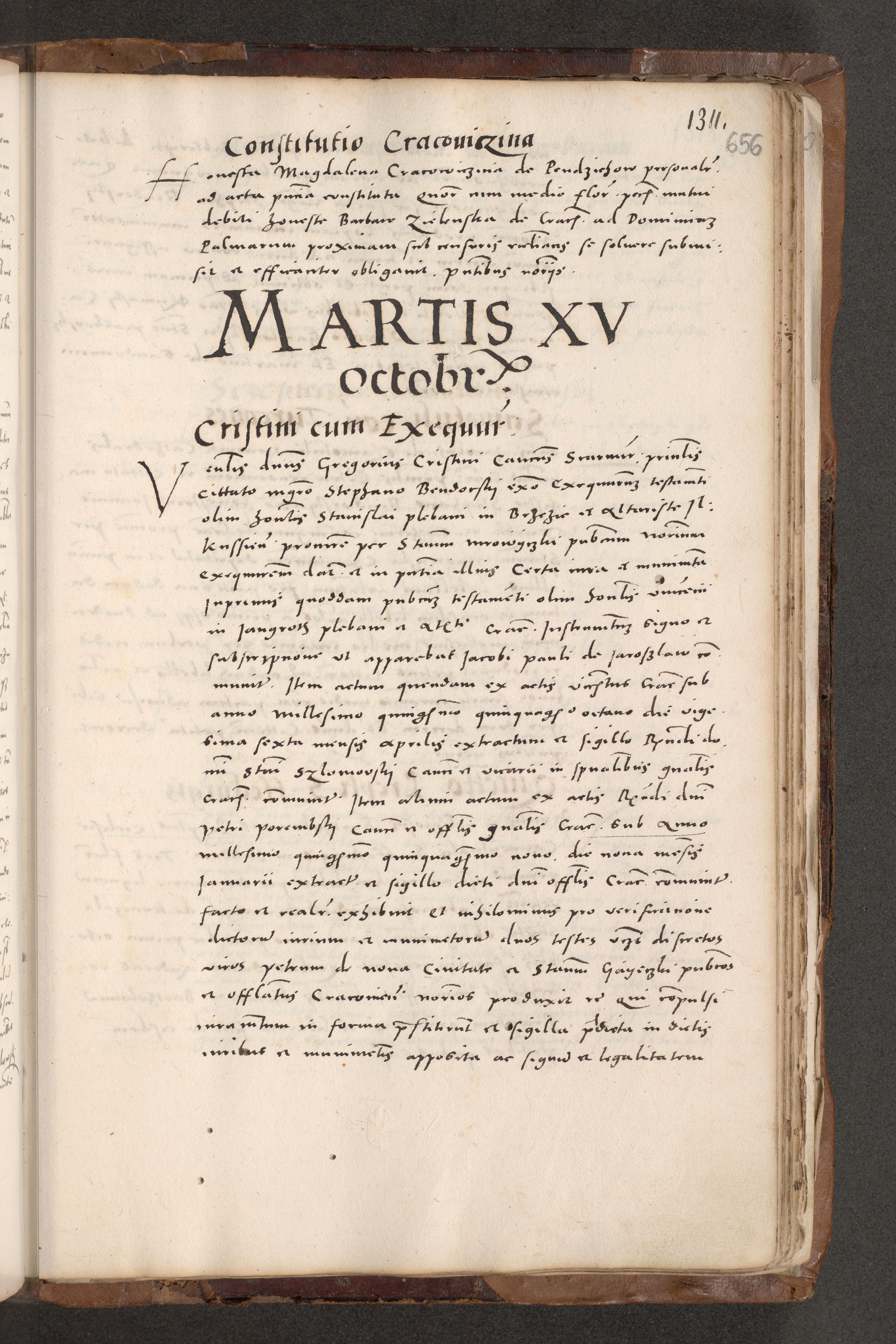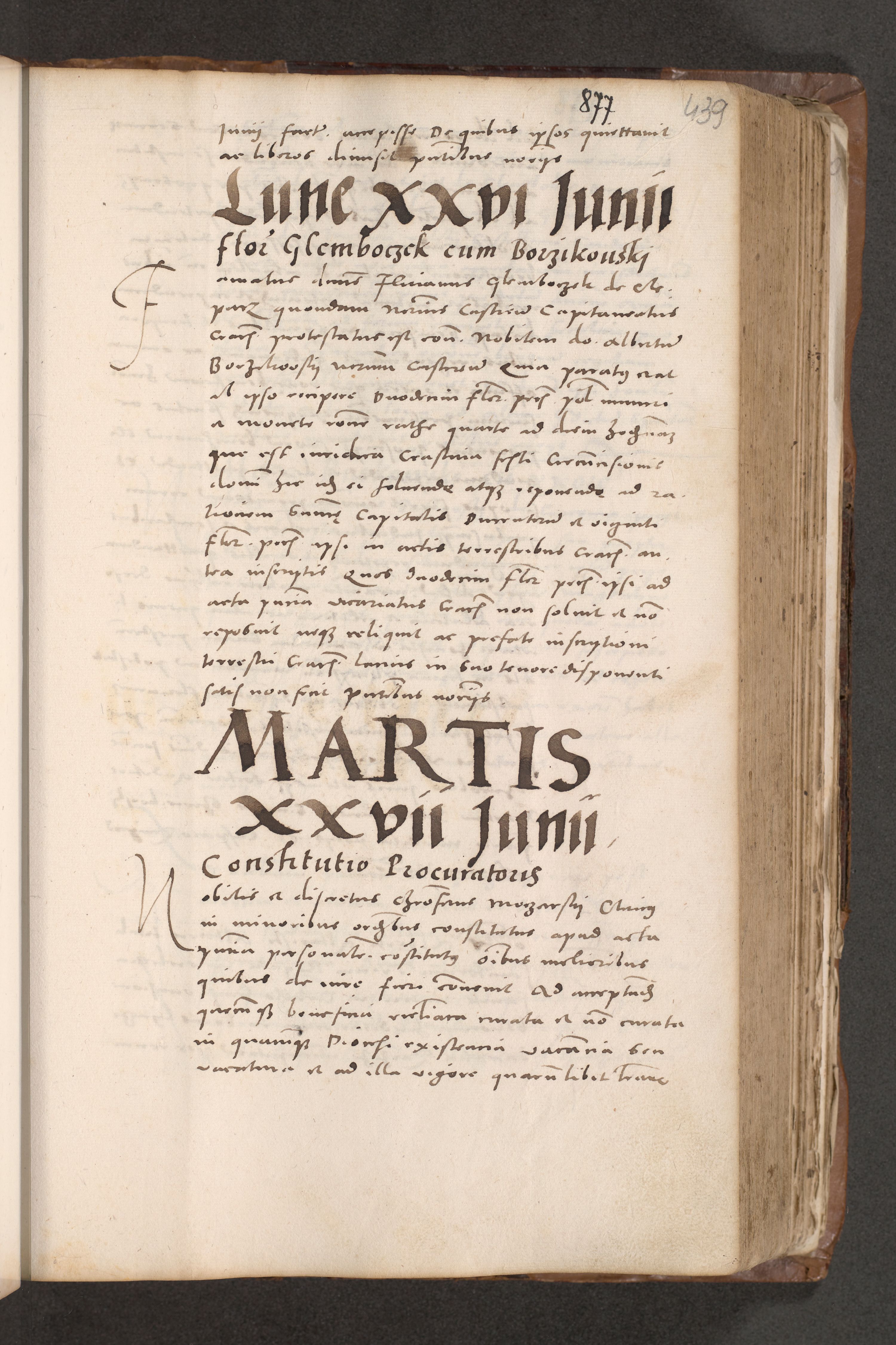 Acta actorum causarum, sententiarum tam diffinivarum quam interloquutoriarum, decretorum, obligationum, quietationum et constitutionum procuratorum coram reverendo domino Stanislao Szlomowski praeposito Calissieensi, archidiacono Sandecensi, canonico vicarioque in spiritualibus generali Cracoviensi ad annum Domini millesimum quingentesimum quinquagesimum octavum, cuius indicio prima, pontificatus sanctissimi domini nostri Pauli divina providencia pape quarti, anno illius tercio, feliciter sequuntur.
