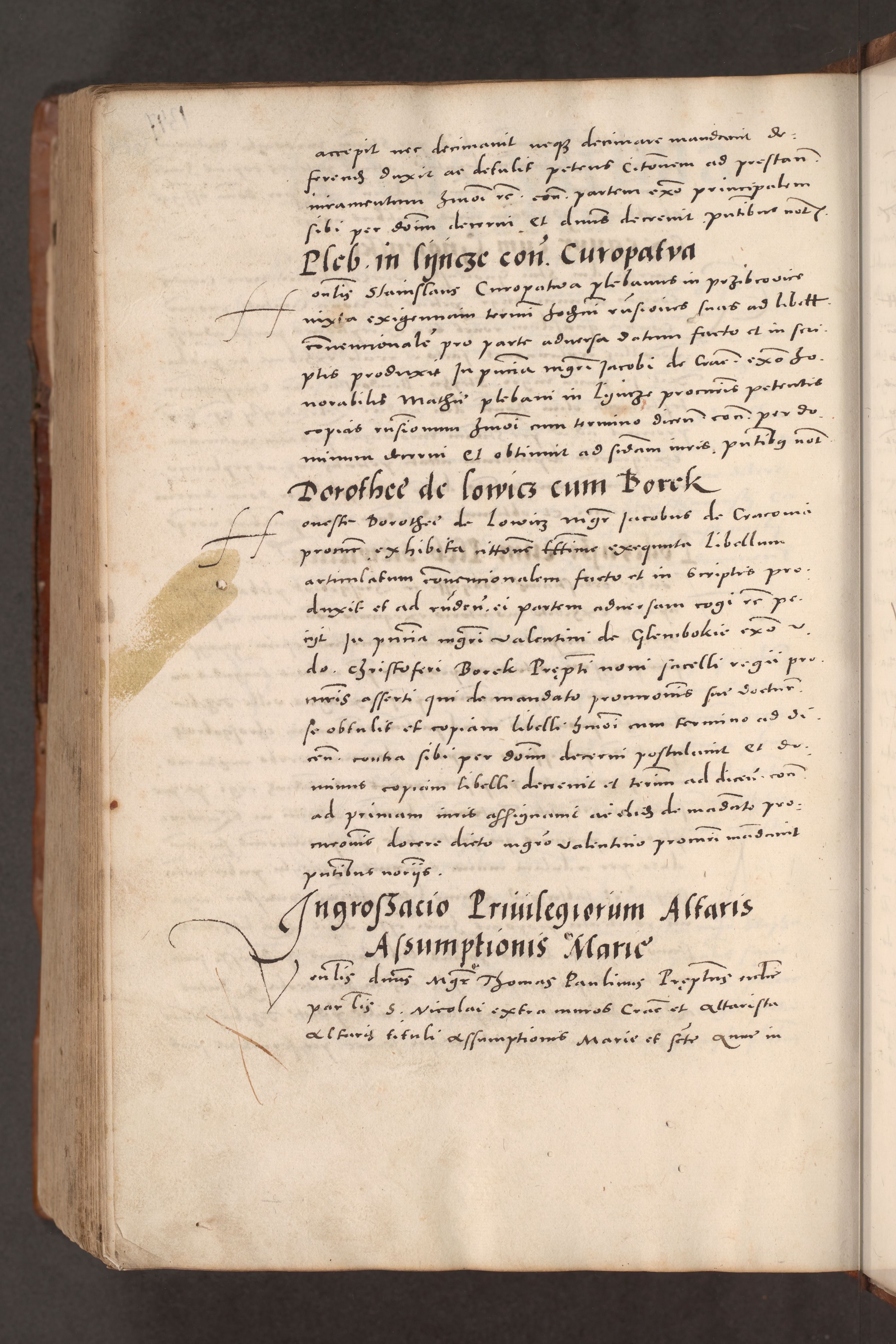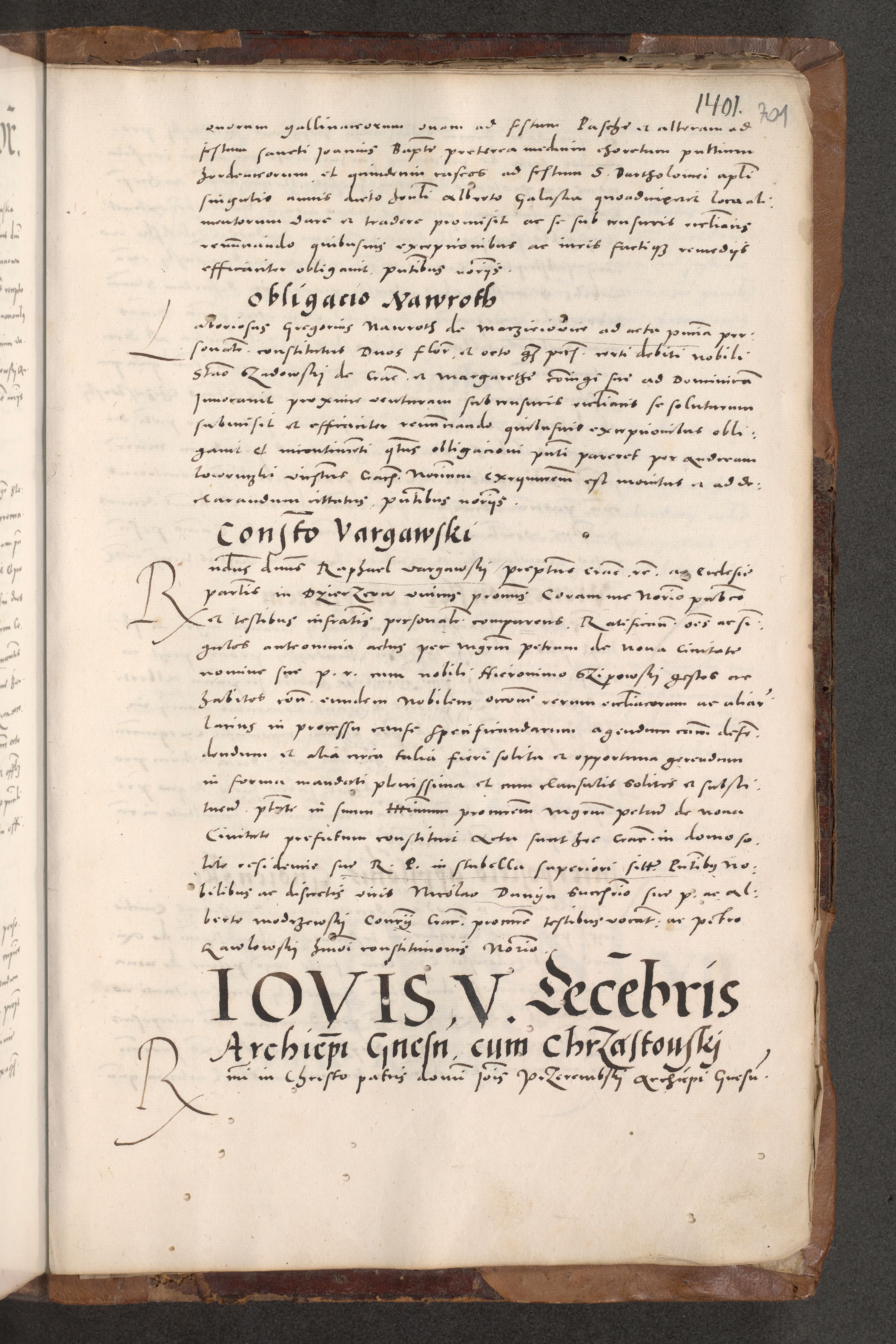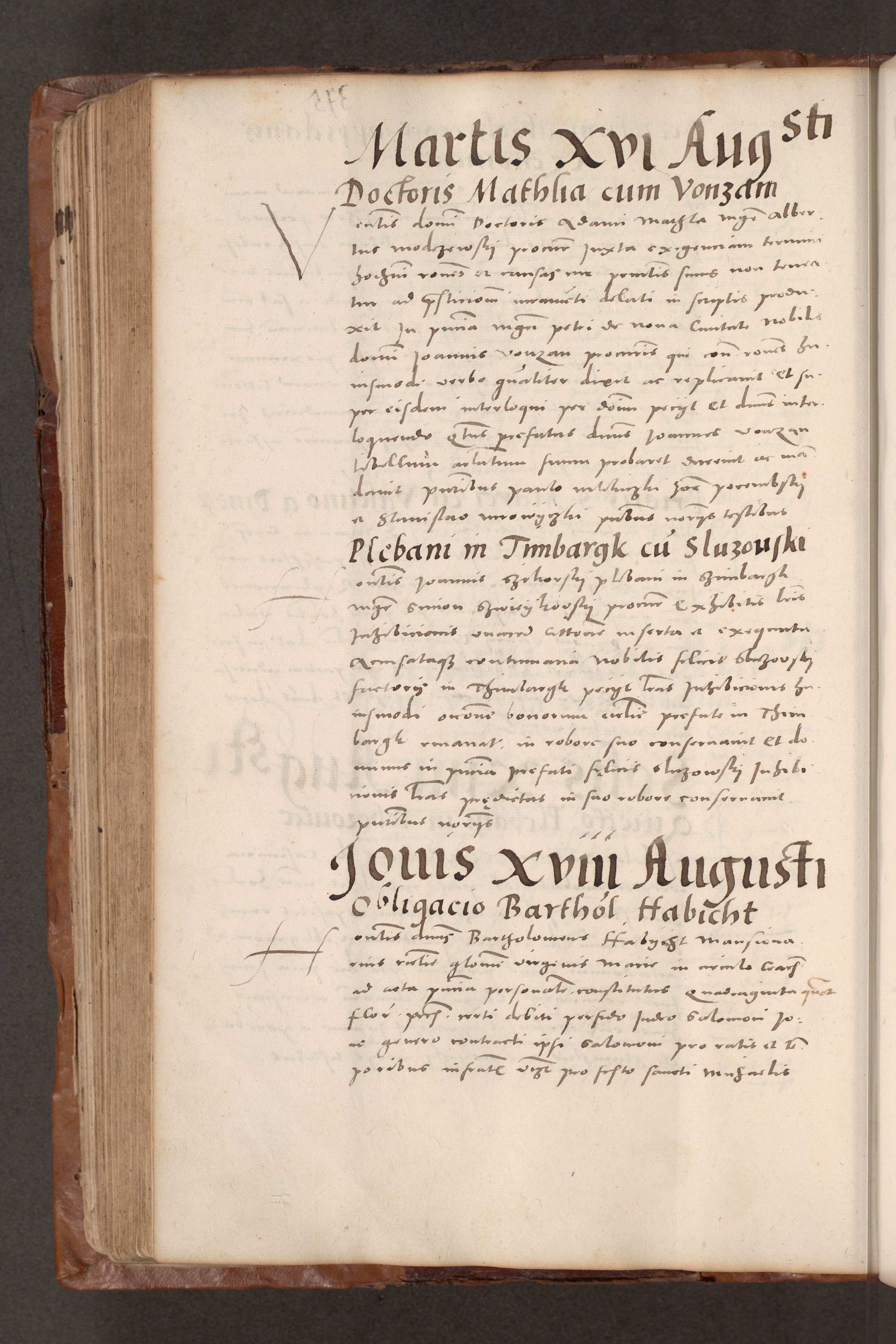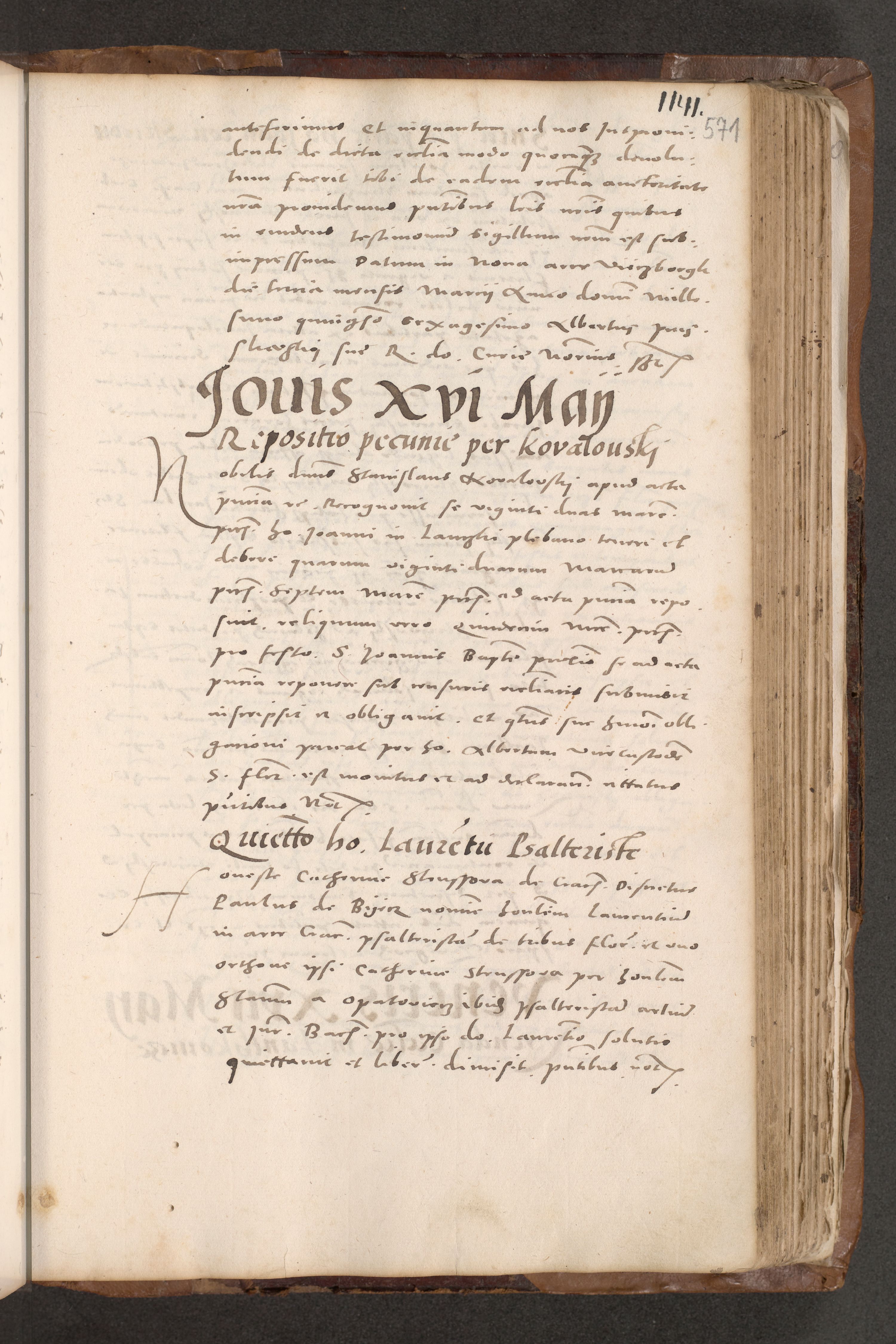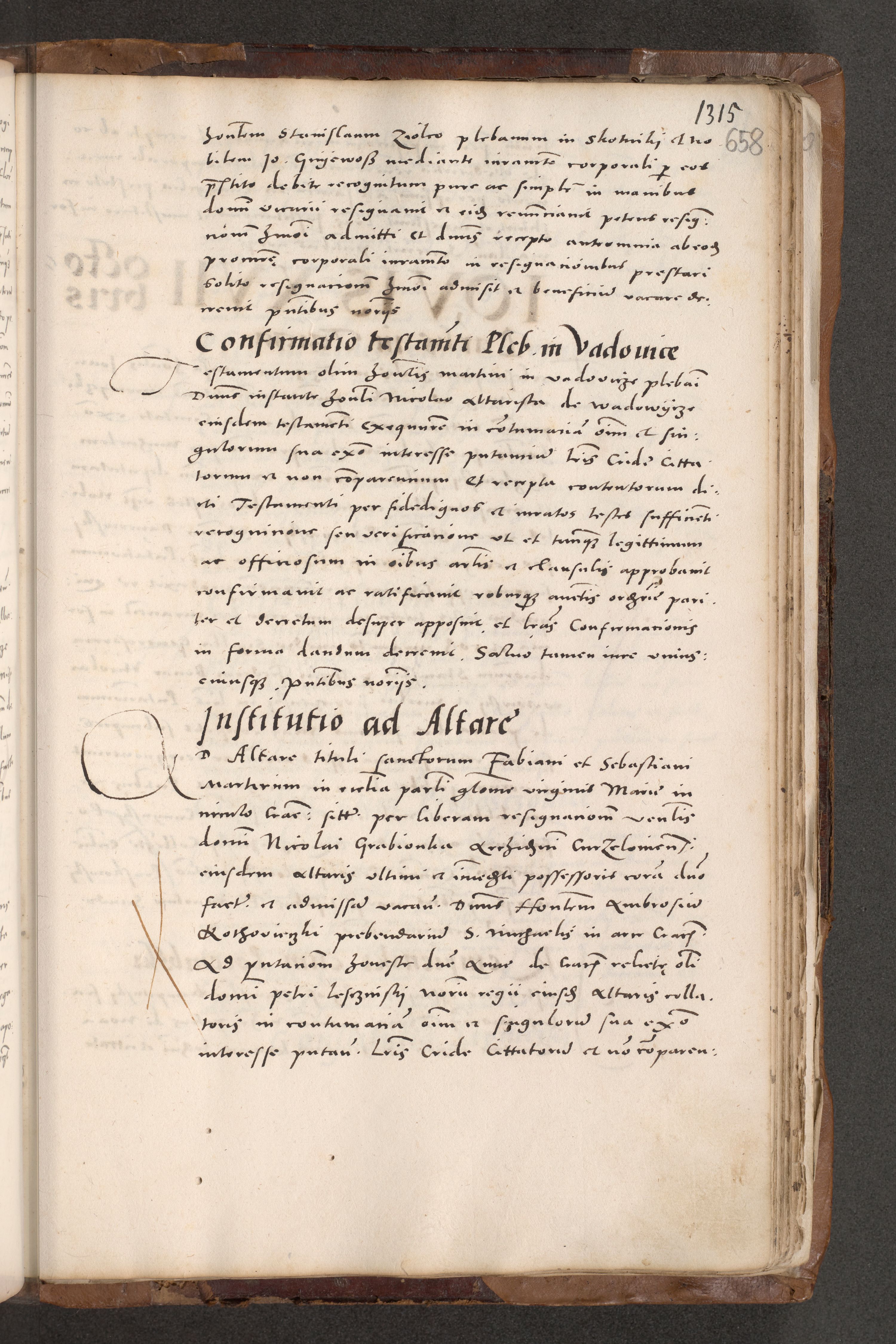 Acta actorum causarum, sententiarum tam diffinivarum quam interloquutoriarum, decretorum, obligationum, quietationum et constitutionum procuratorum coram reverendo domino Stanislao Szlomowski praeposito Calissieensi, archidiacono Sandecensi, canonico vicarioque in spiritualibus generali Cracoviensi ad annum Domini millesimum quingentesimum quinquagesimum octavum, cuius indicio prima, pontificatus sanctissimi domini nostri Pauli divina providencia pape quarti, anno illius tercio, feliciter sequuntur.