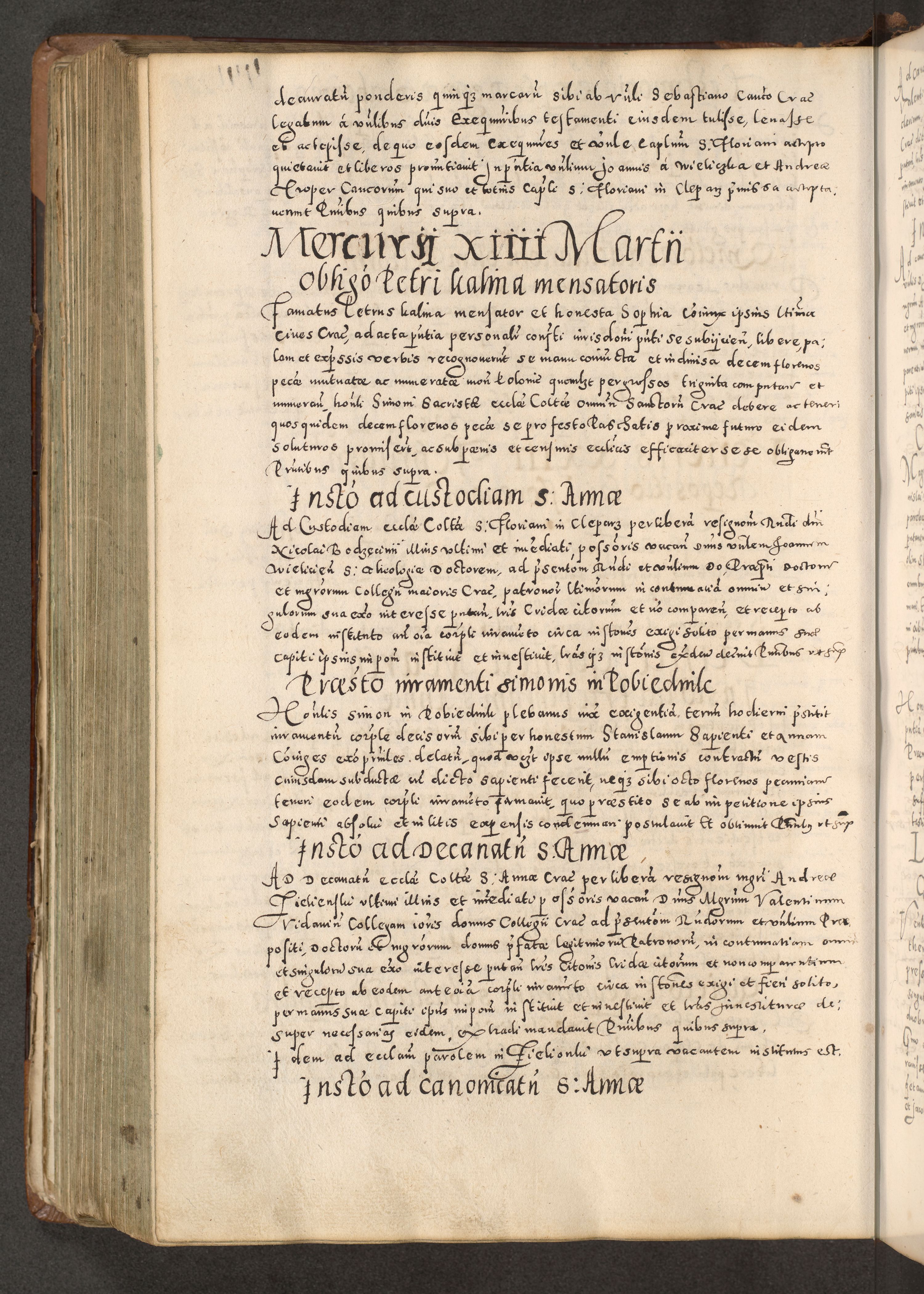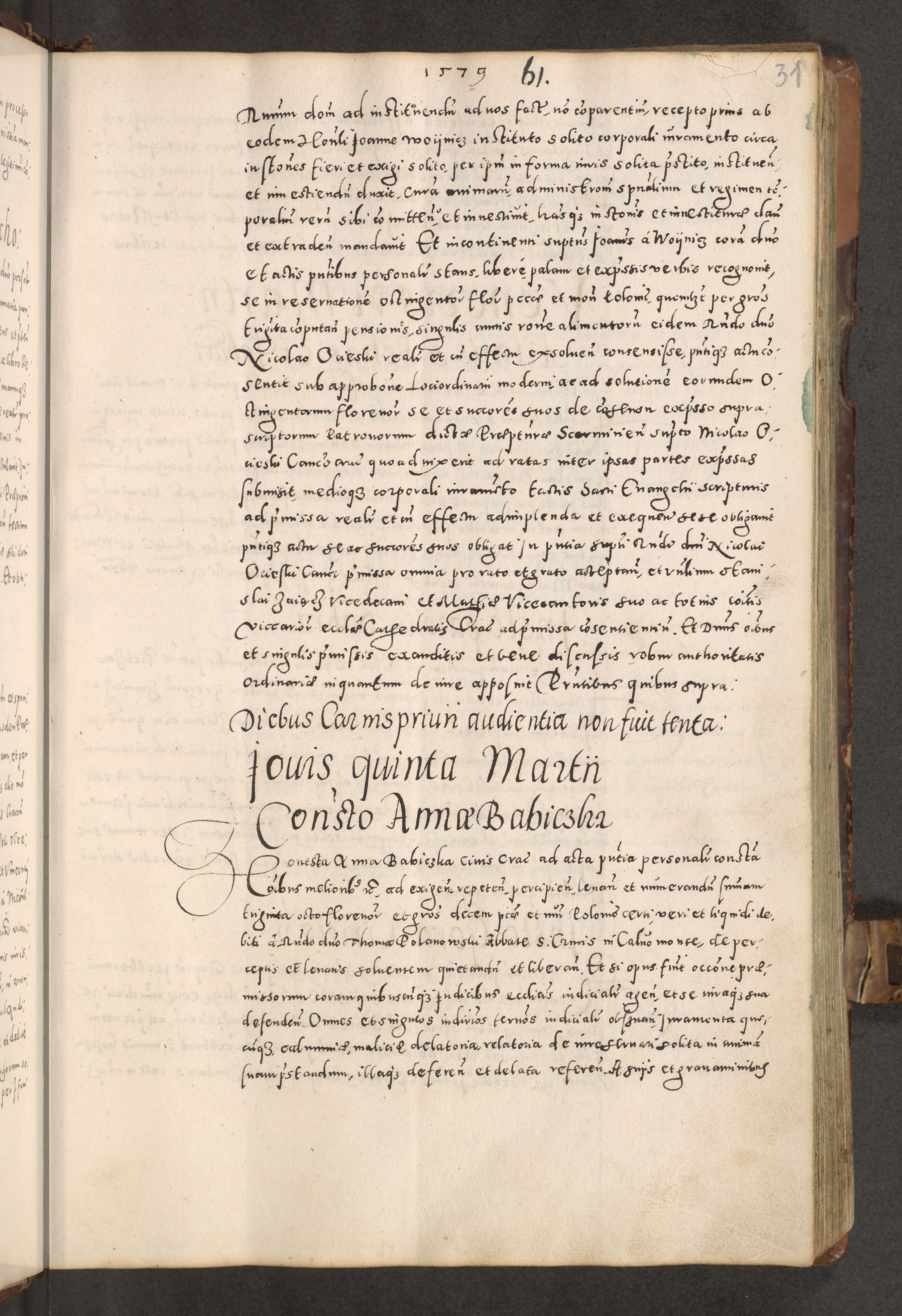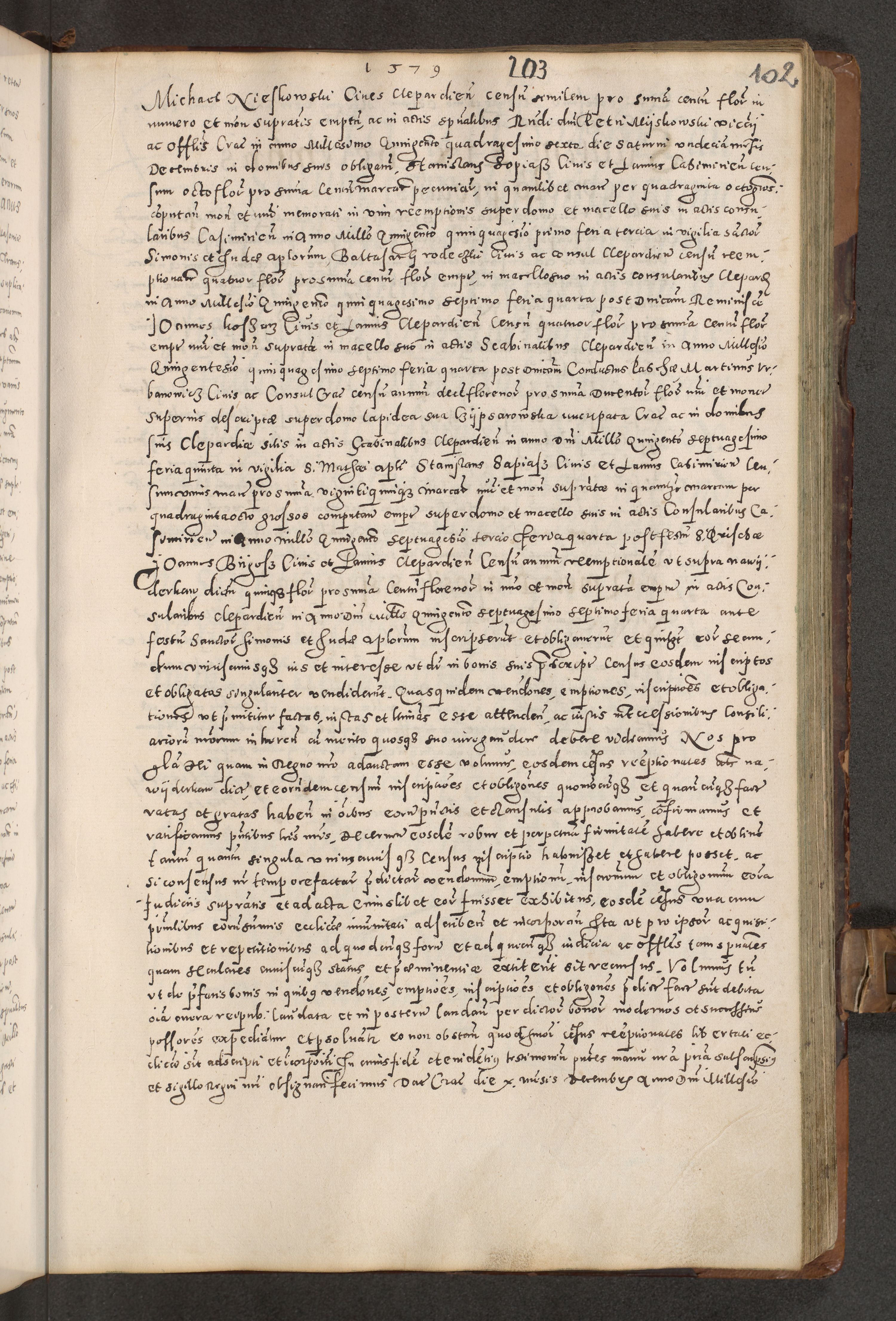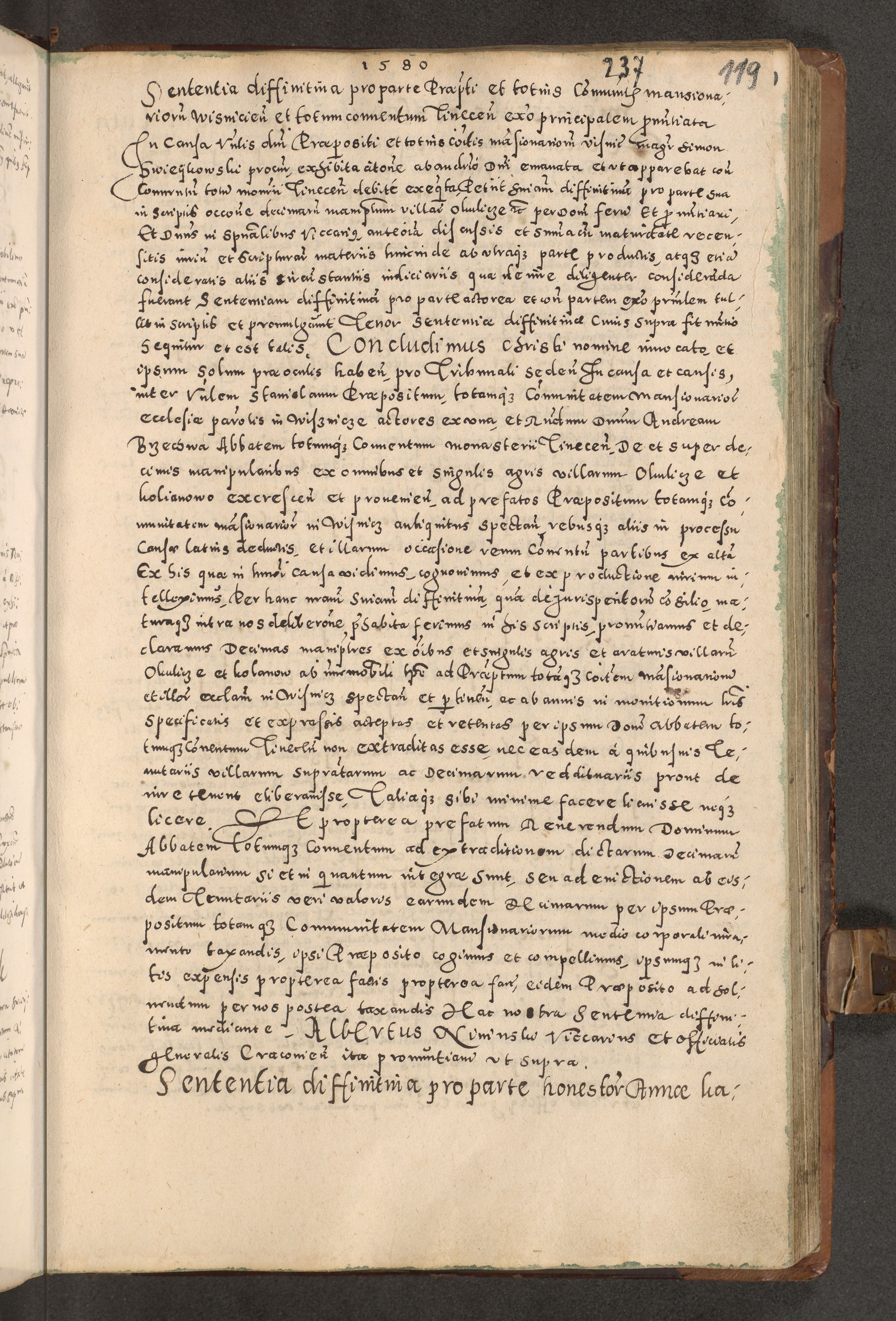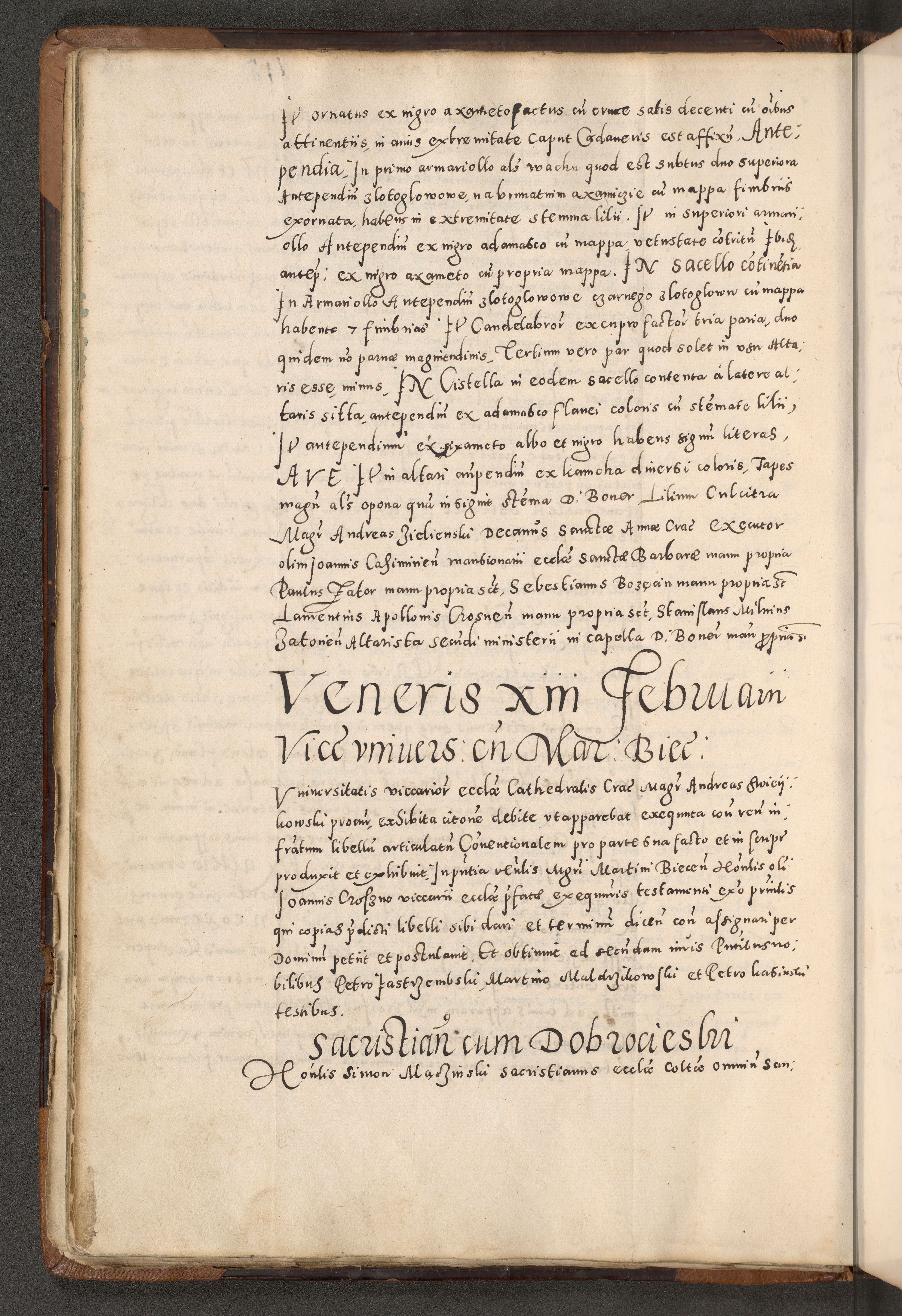 Acta actorum causarum tam diffinitivarum quam interloquutoriarum sententiarum decretorum obligationum quietatorum constuorum pro reverendum coram Reverendo Domino Alberto Nininski Custode Sandecensis Canonico et Archipresbitero Viccarioque in Spiritualibus ac Officiali Generali Cracoviensis ad Annum Domini Millesimum Qumgentesimum Septuagentesimum Nonum cuius Judictio septima Pontificat SS. nostri Domini Gregory pp. tredecimi Anno septimo inchoantur faliciter