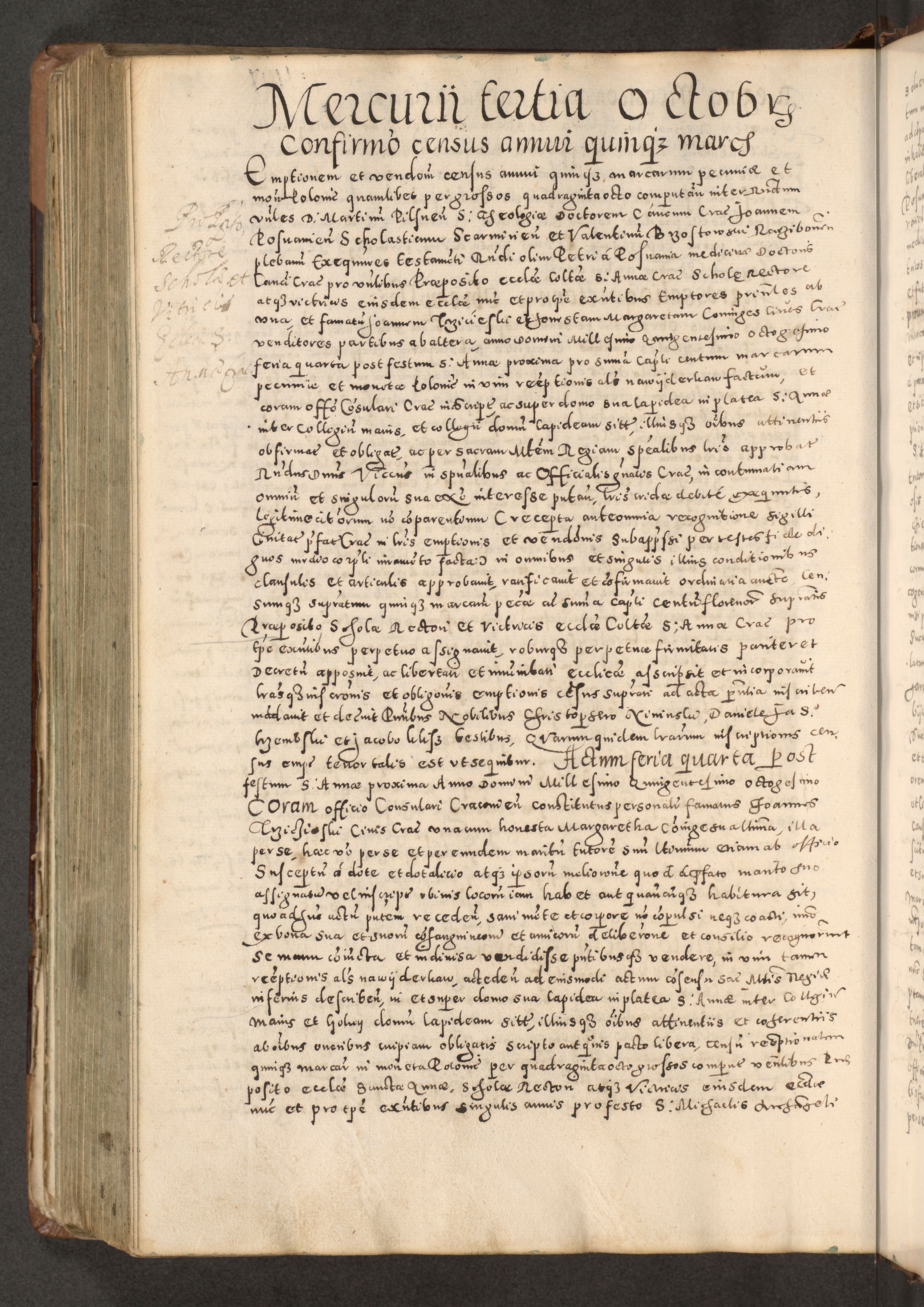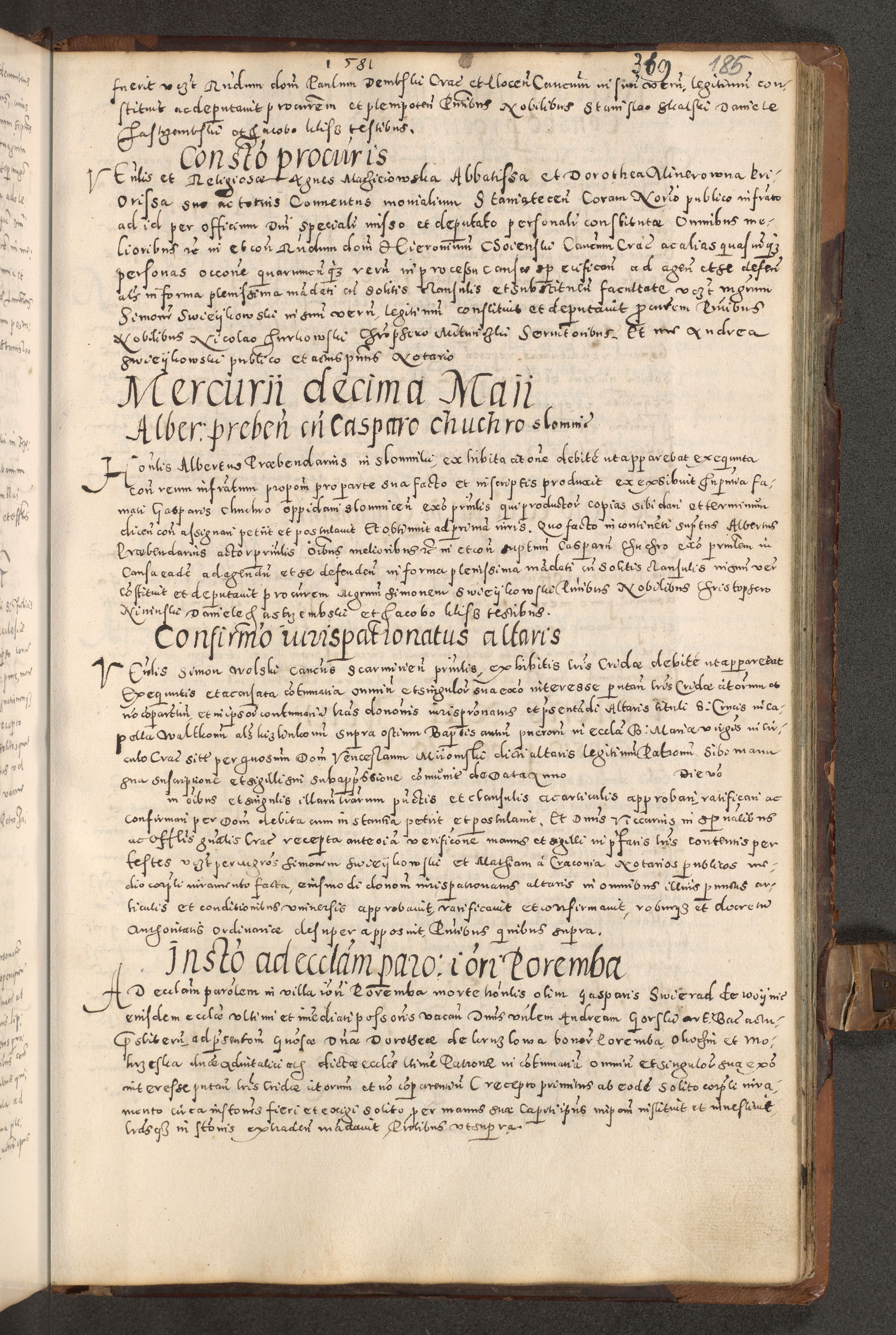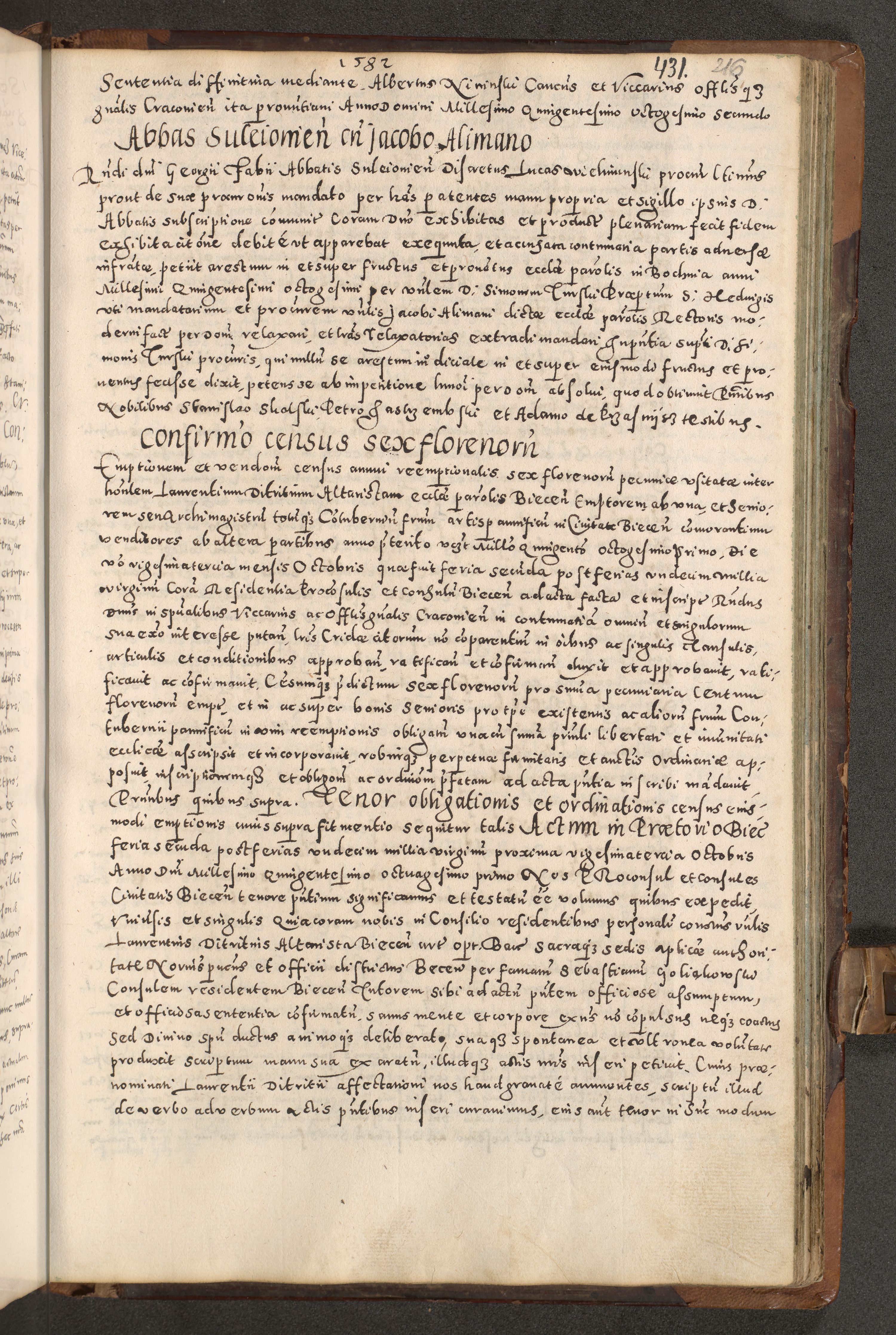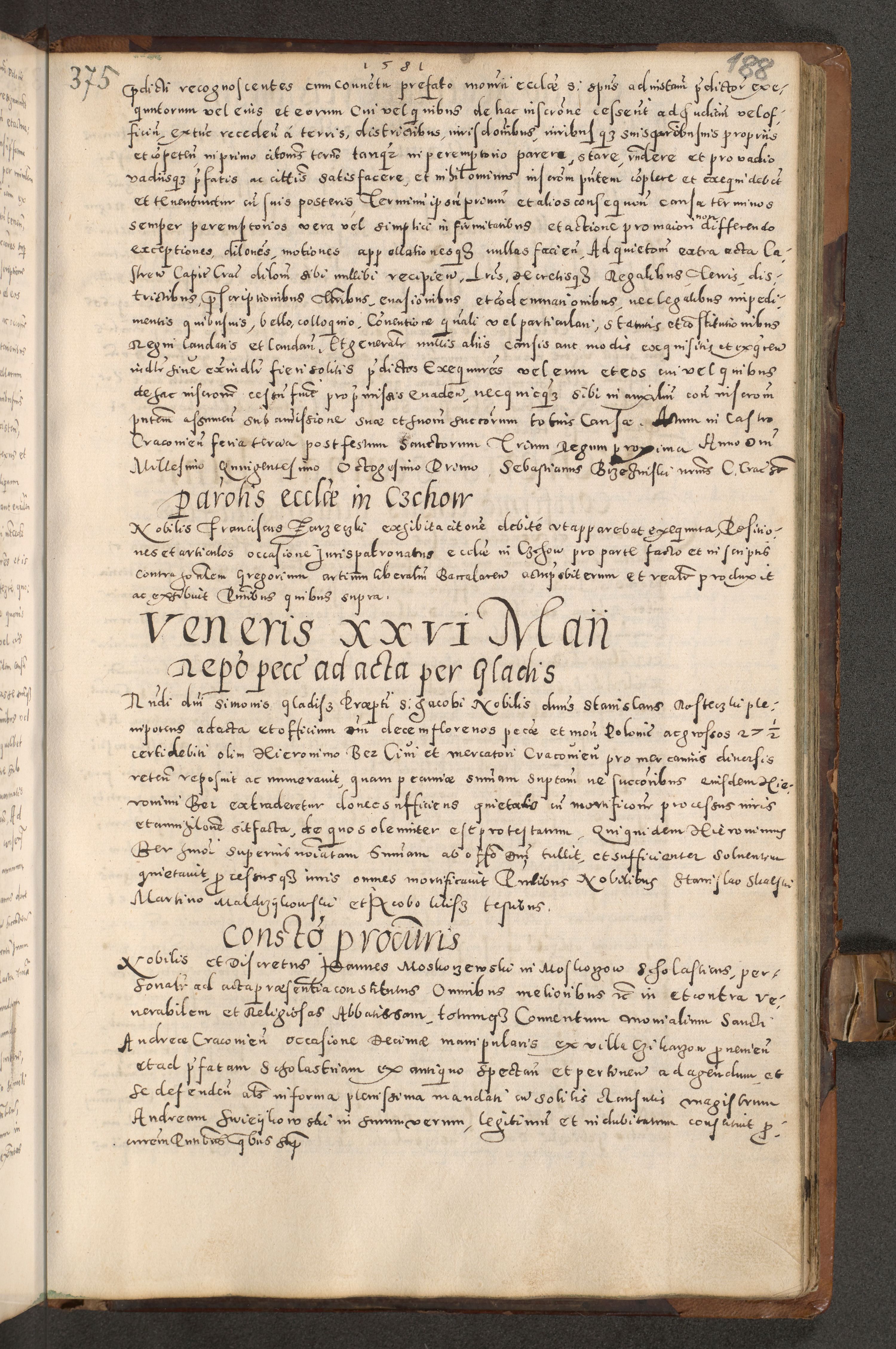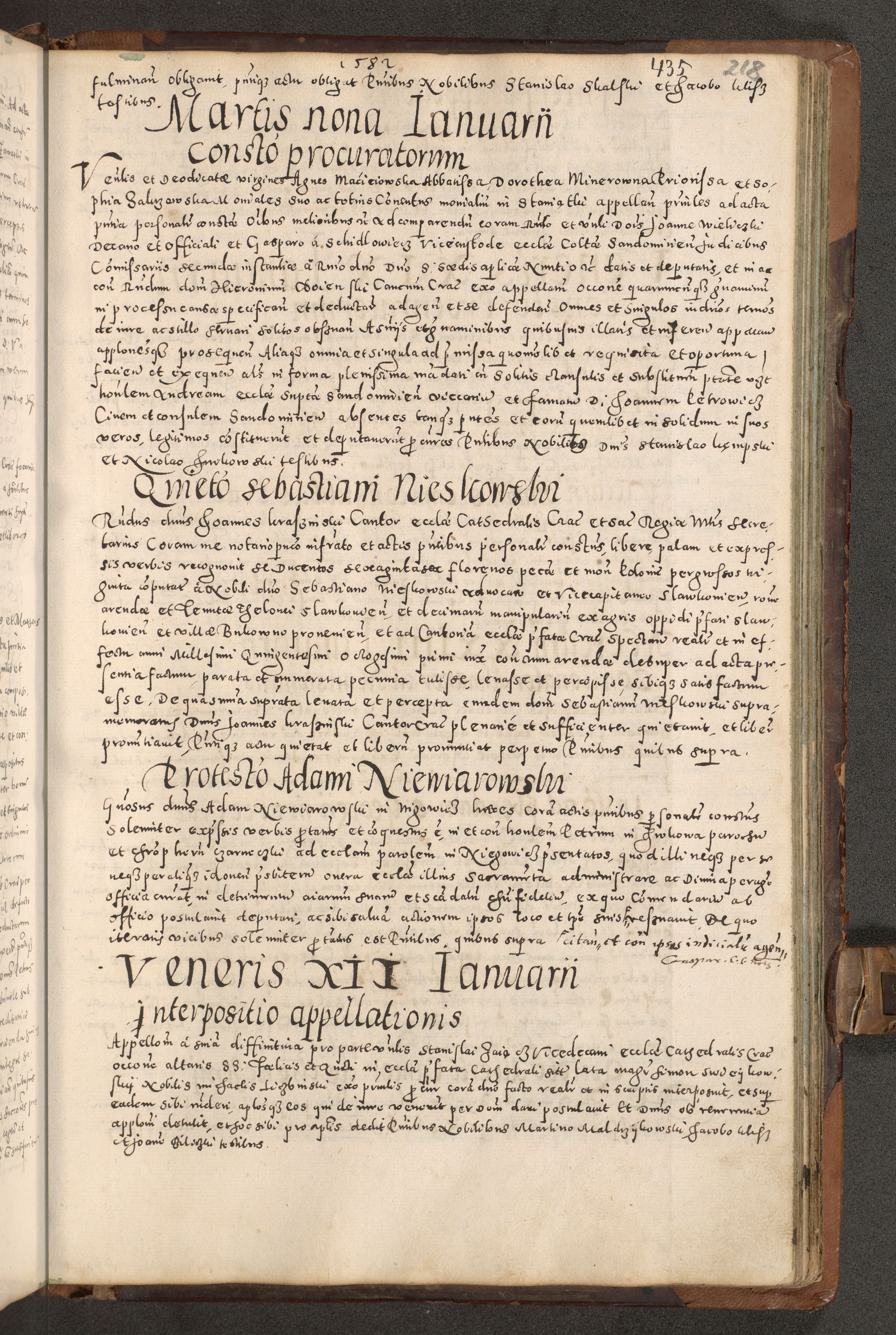 Acta actorum causarum tam diffinitivarum quam interloquutoriarum sententiarum decretorum obligationum quietatorum constuorum pro reverendum coram Reverendo Domino Alberto Nininski Custode Sandecensis Canonico et Archipresbitero Viccarioque in Spiritualibus ac Officiali Generali Cracoviensis ad Annum Domini Millesimum Qumgentesimum Septuagentesimum Nonum cuius Judictio septima Pontificat SS. nostri Domini Gregory pp. tredecimi Anno septimo inchoantur faliciter