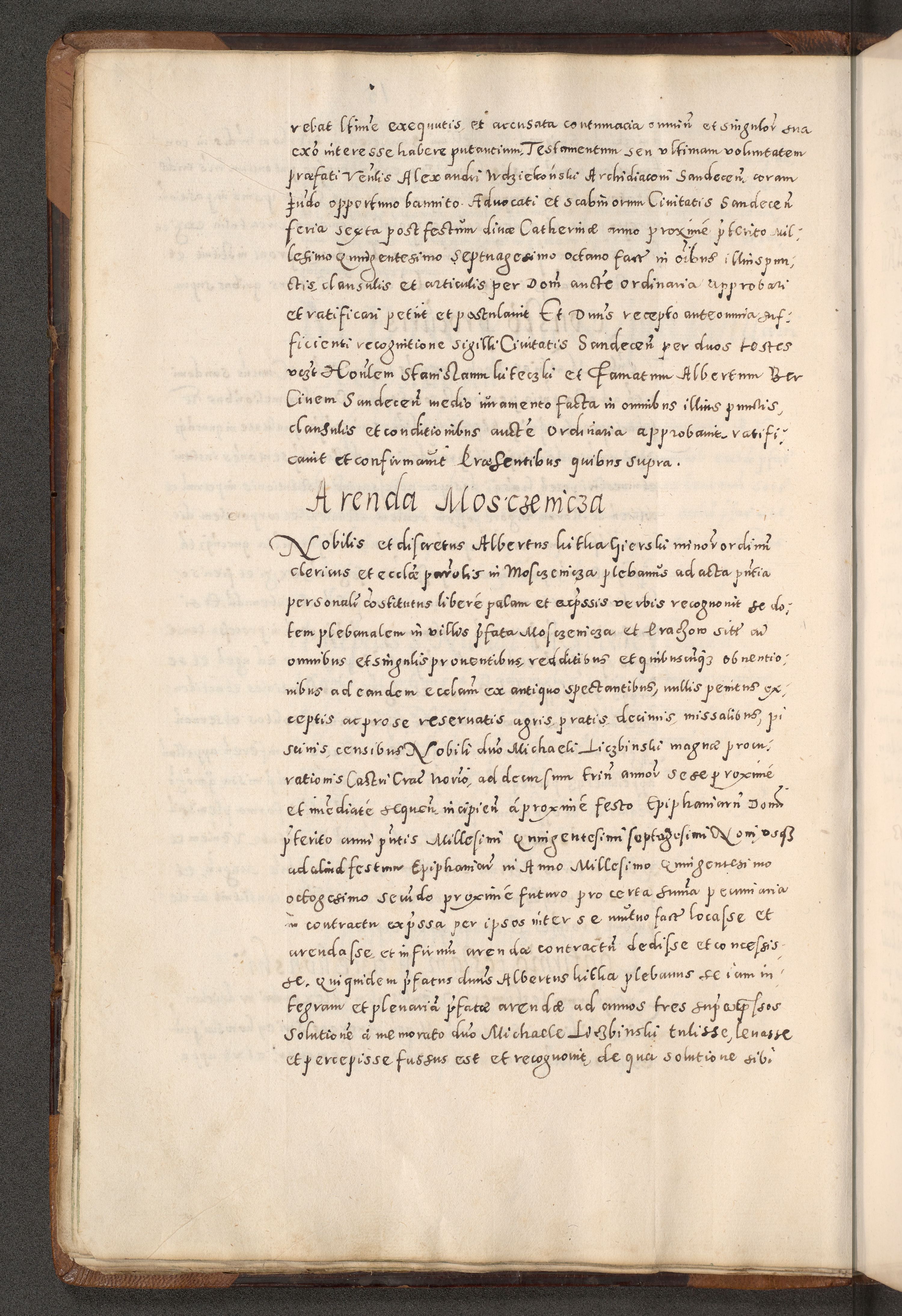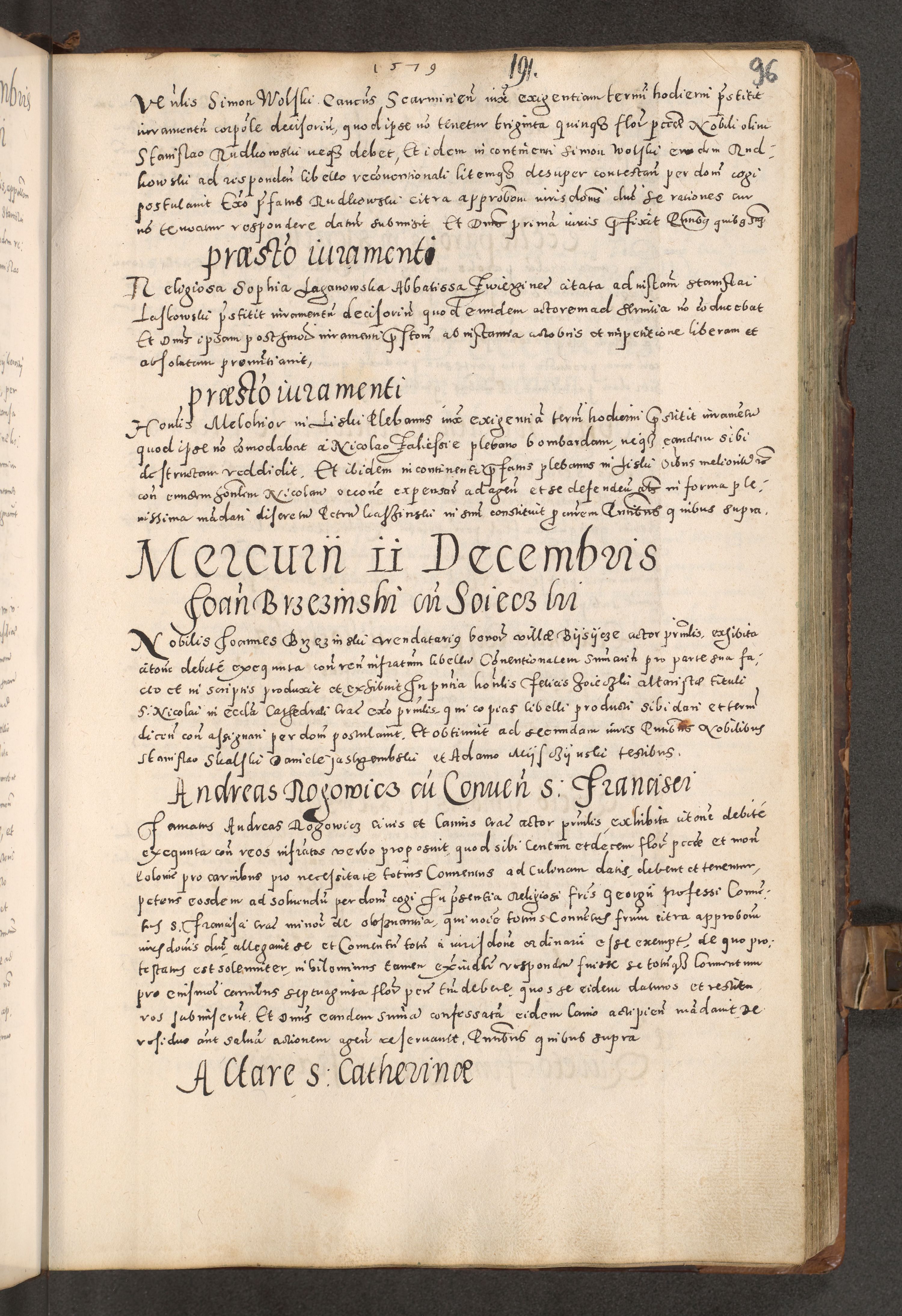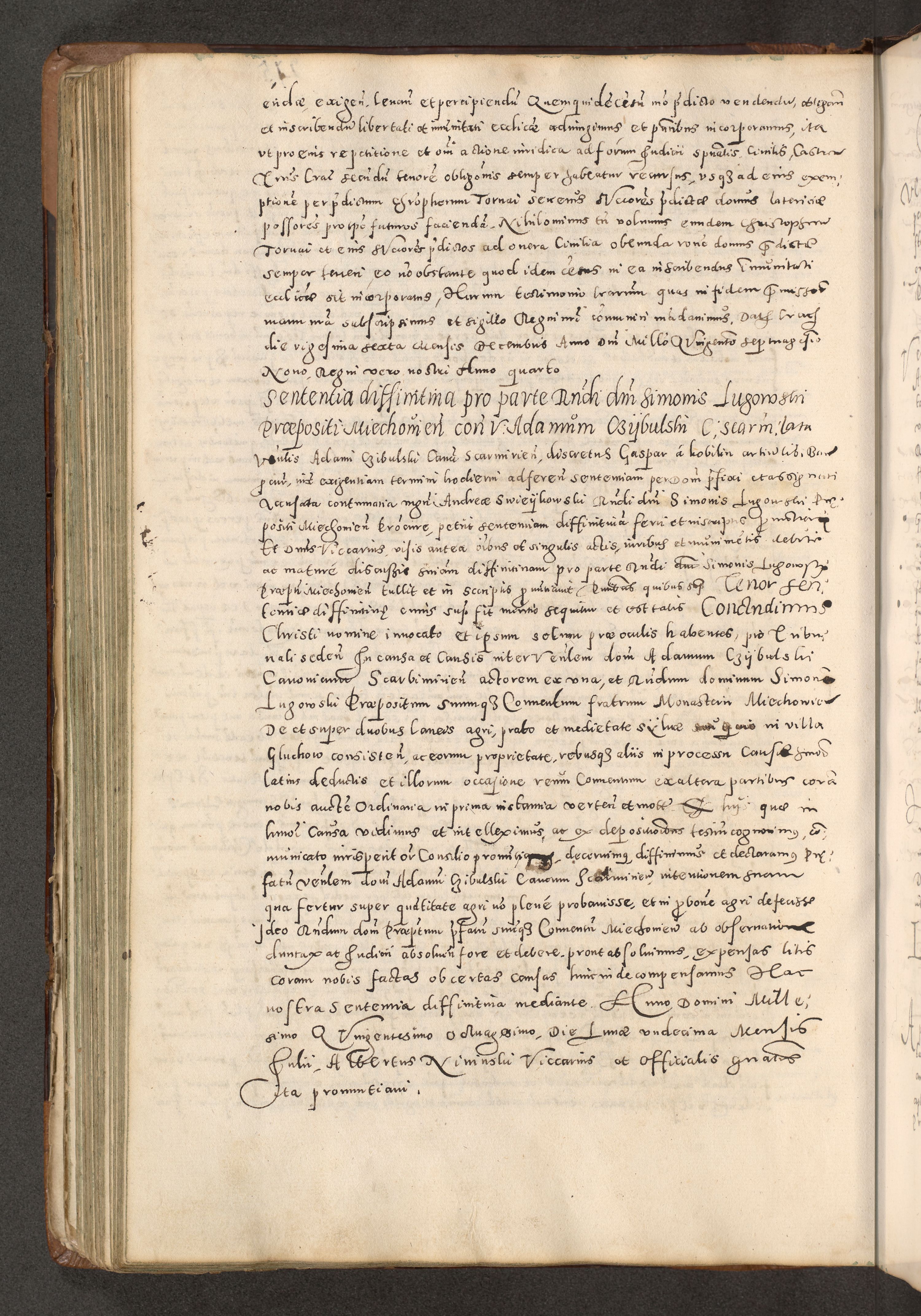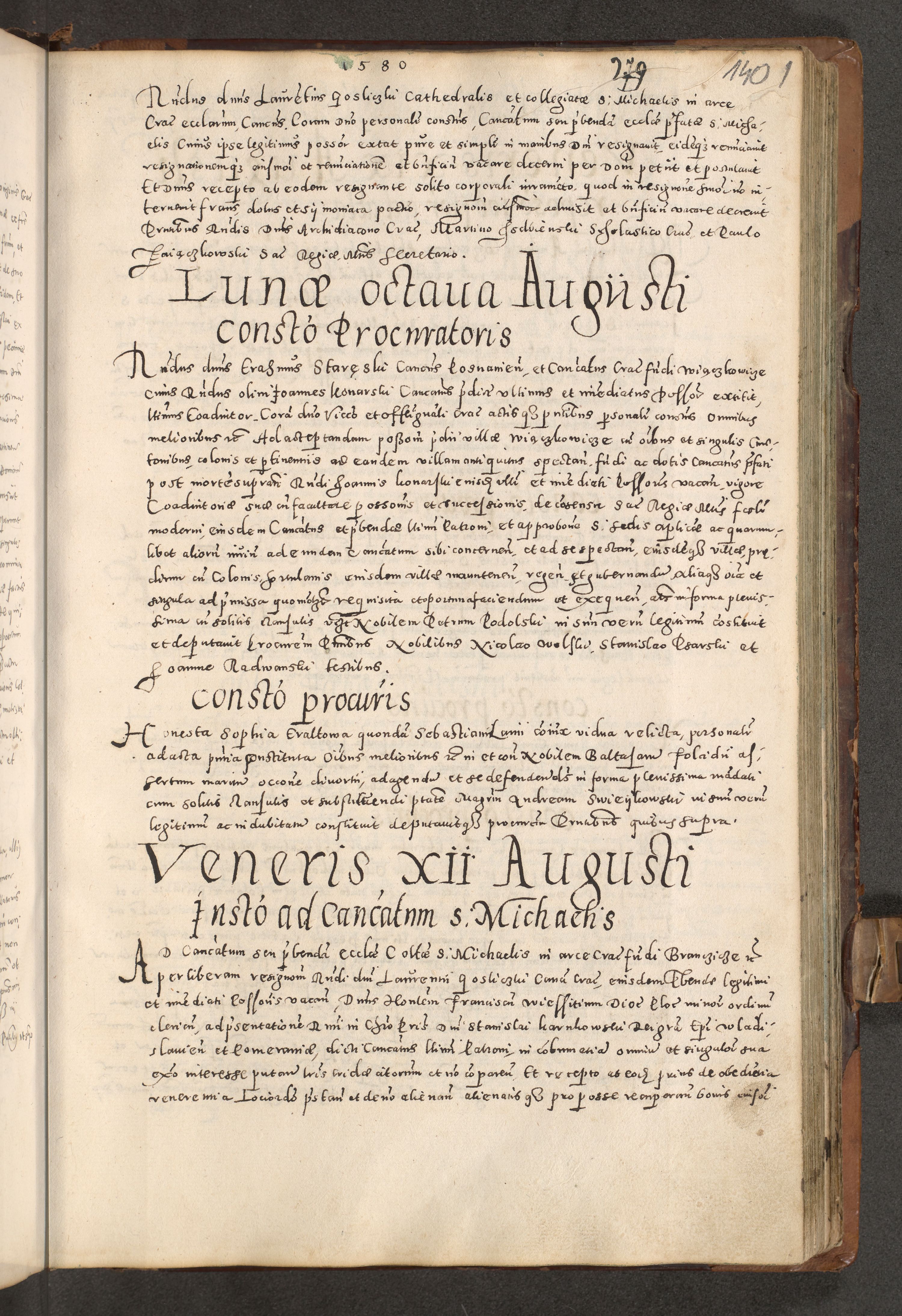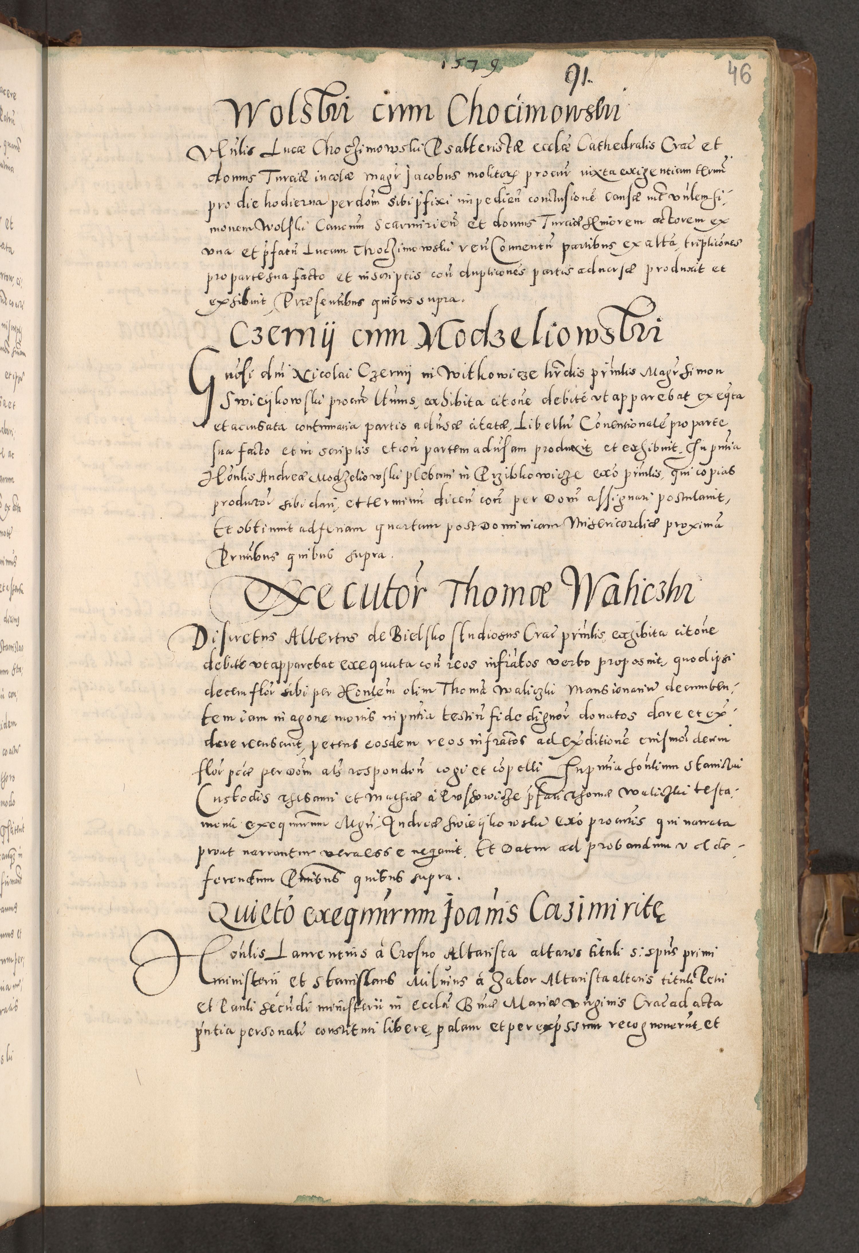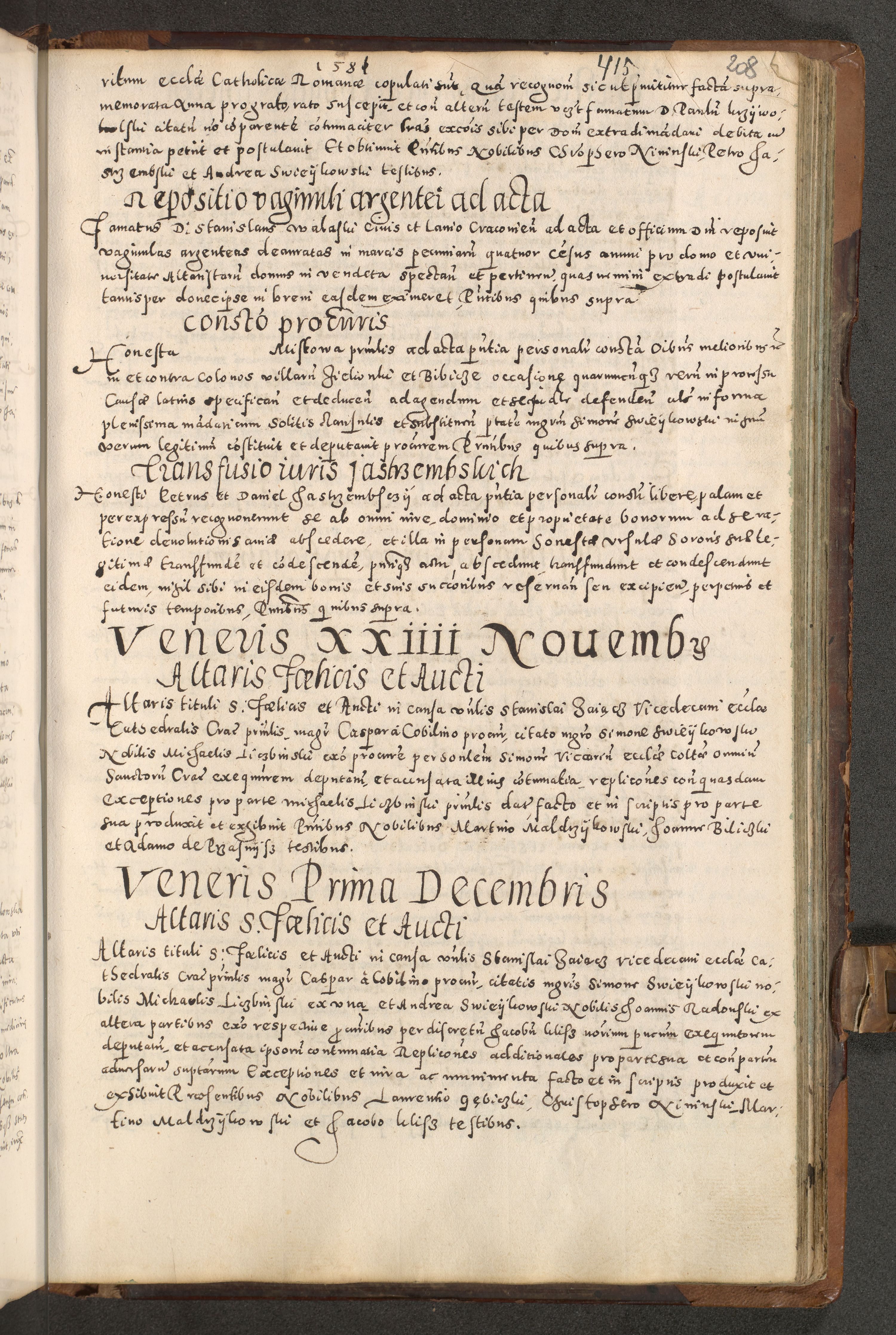 Acta actorum causarum tam diffinitivarum quam interloquutoriarum sententiarum decretorum obligationum quietatorum constuorum pro reverendum coram Reverendo Domino Alberto Nininski Custode Sandecensis Canonico et Archipresbitero Viccarioque in Spiritualibus ac Officiali Generali Cracoviensis ad Annum Domini Millesimum Qumgentesimum Septuagentesimum Nonum cuius Judictio septima Pontificat SS. nostri Domini Gregory pp. tredecimi Anno septimo inchoantur faliciter