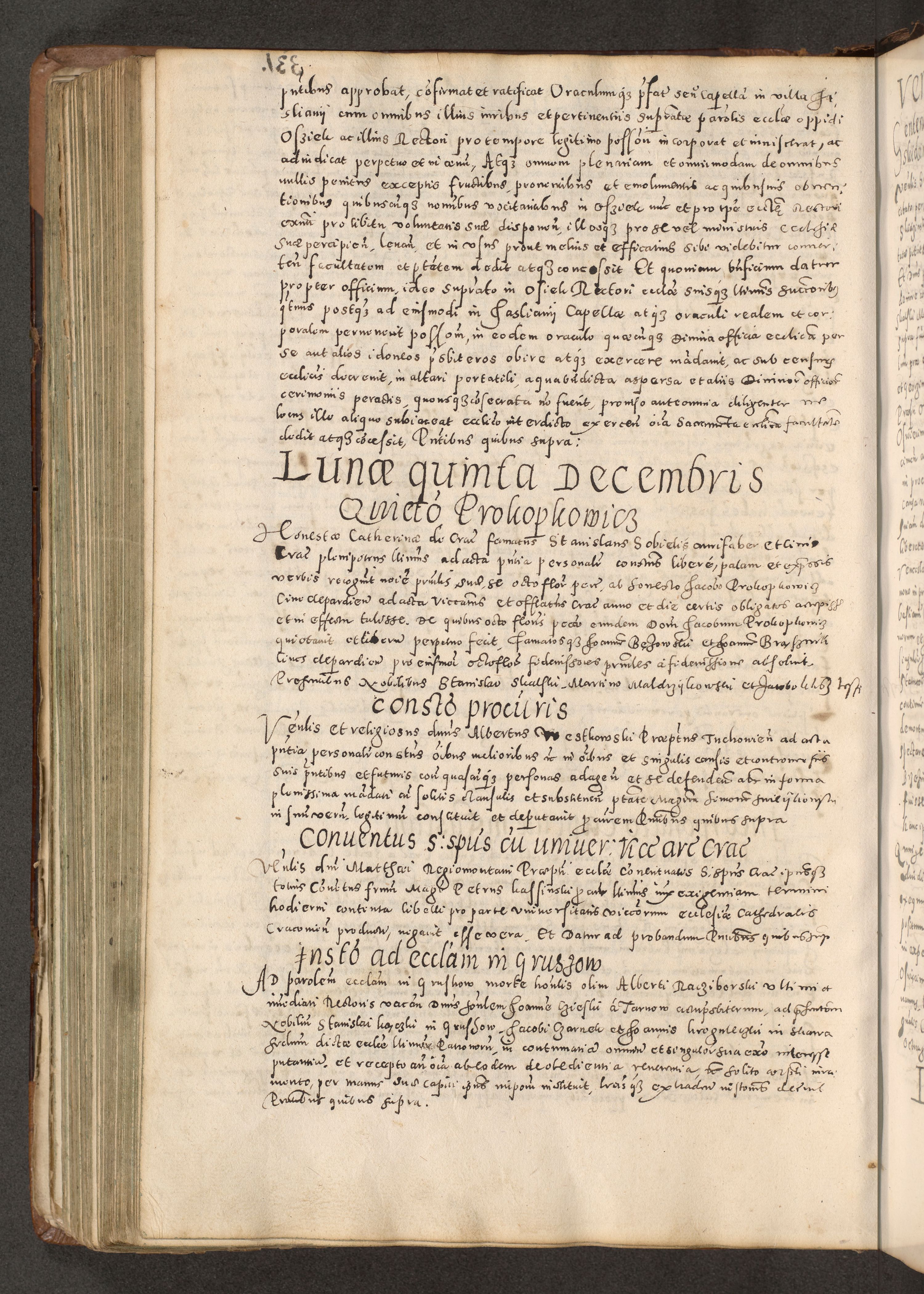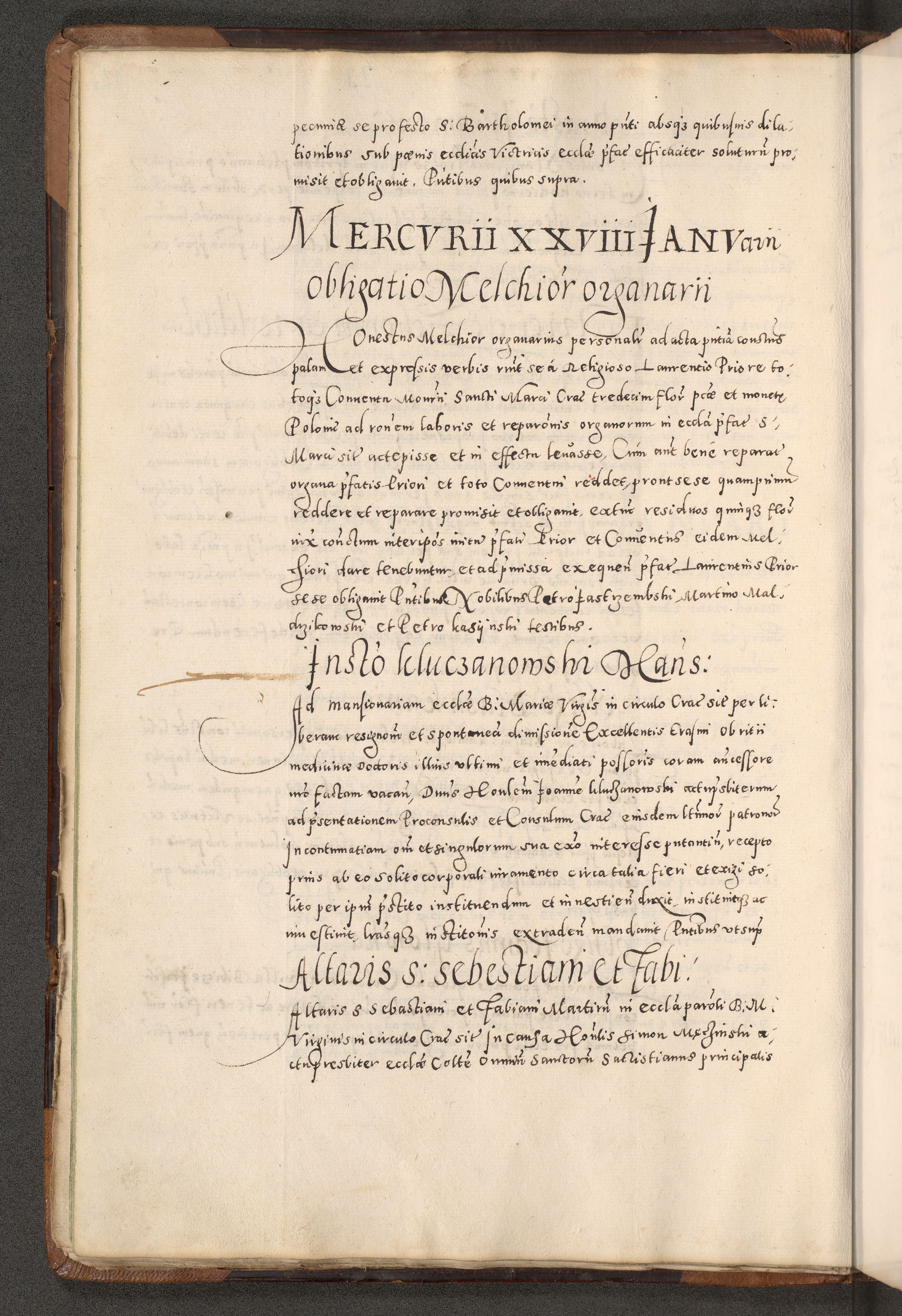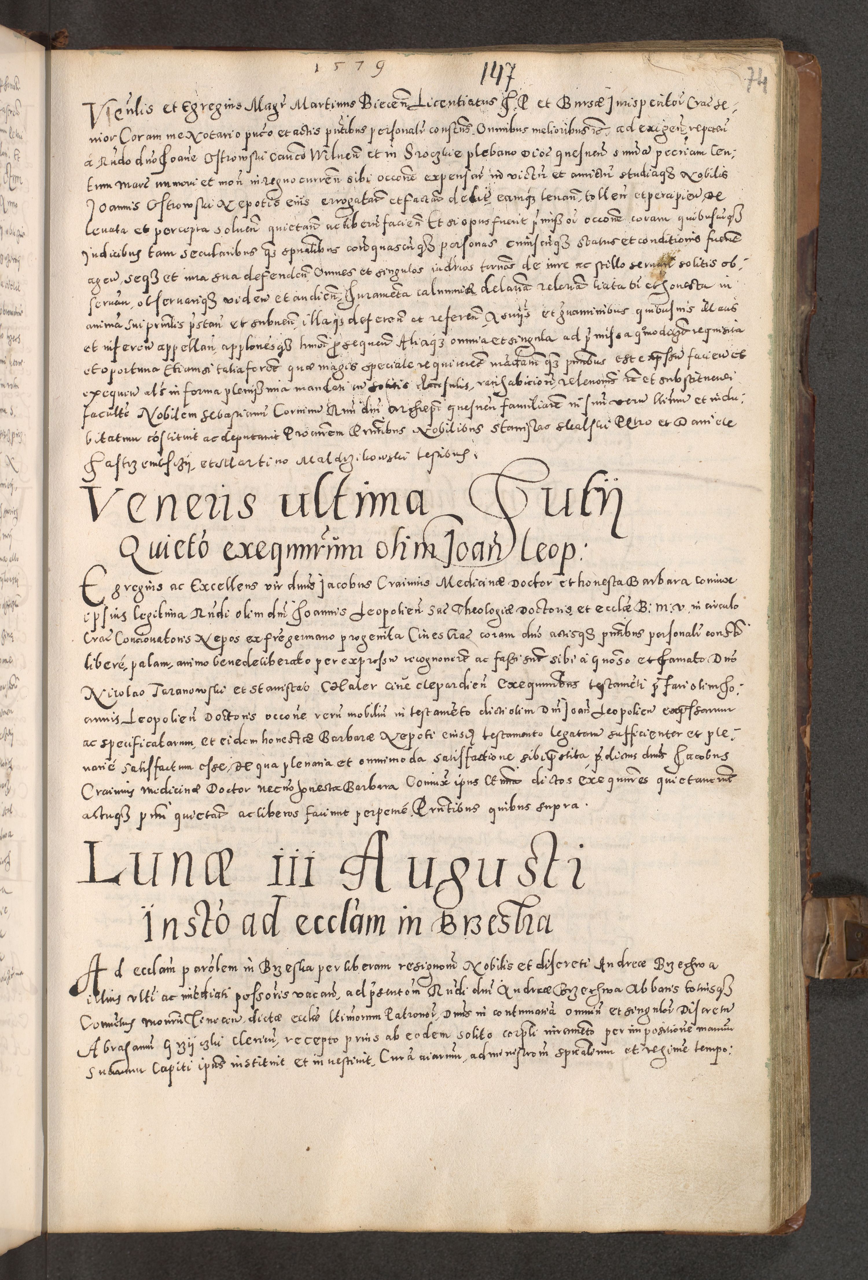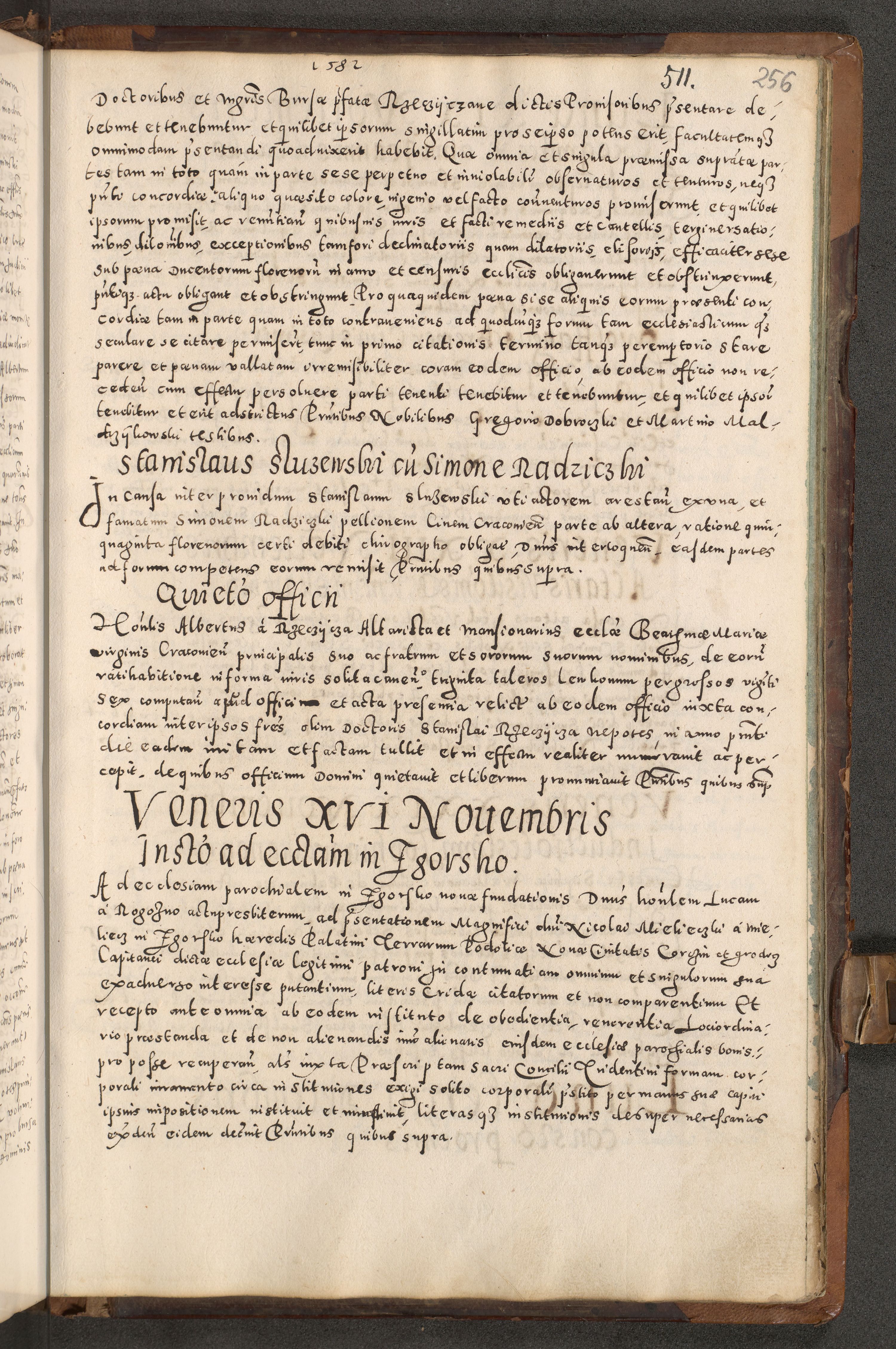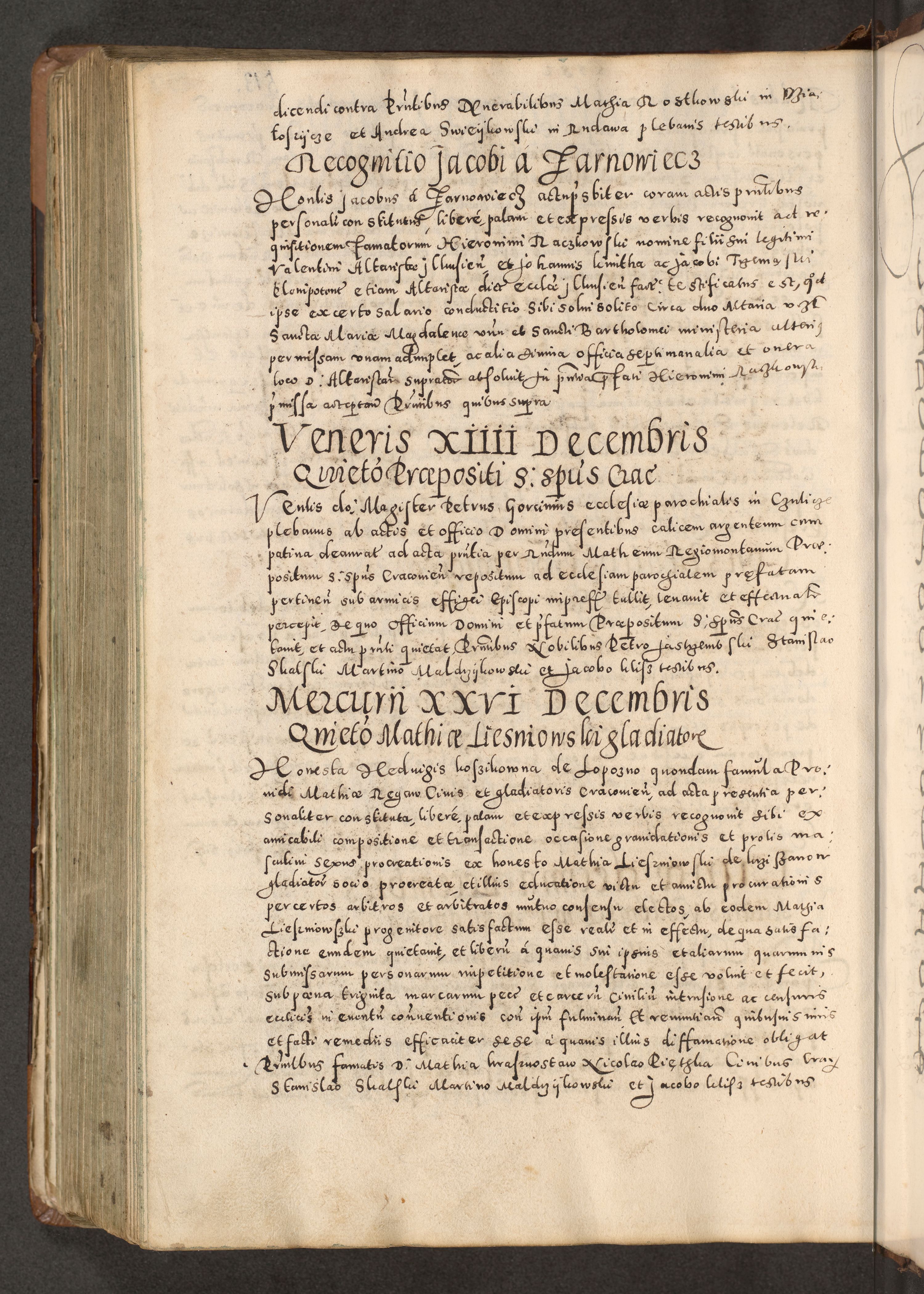 Acta actorum causarum tam diffinitivarum quam interloquutoriarum sententiarum decretorum obligationum quietatorum constuorum pro reverendum coram Reverendo Domino Alberto Nininski Custode Sandecensis Canonico et Archipresbitero Viccarioque in Spiritualibus ac Officiali Generali Cracoviensis ad Annum Domini Millesimum Qumgentesimum Septuagentesimum Nonum cuius Judictio septima Pontificat SS. nostri Domini Gregory pp. tredecimi Anno septimo inchoantur faliciter
