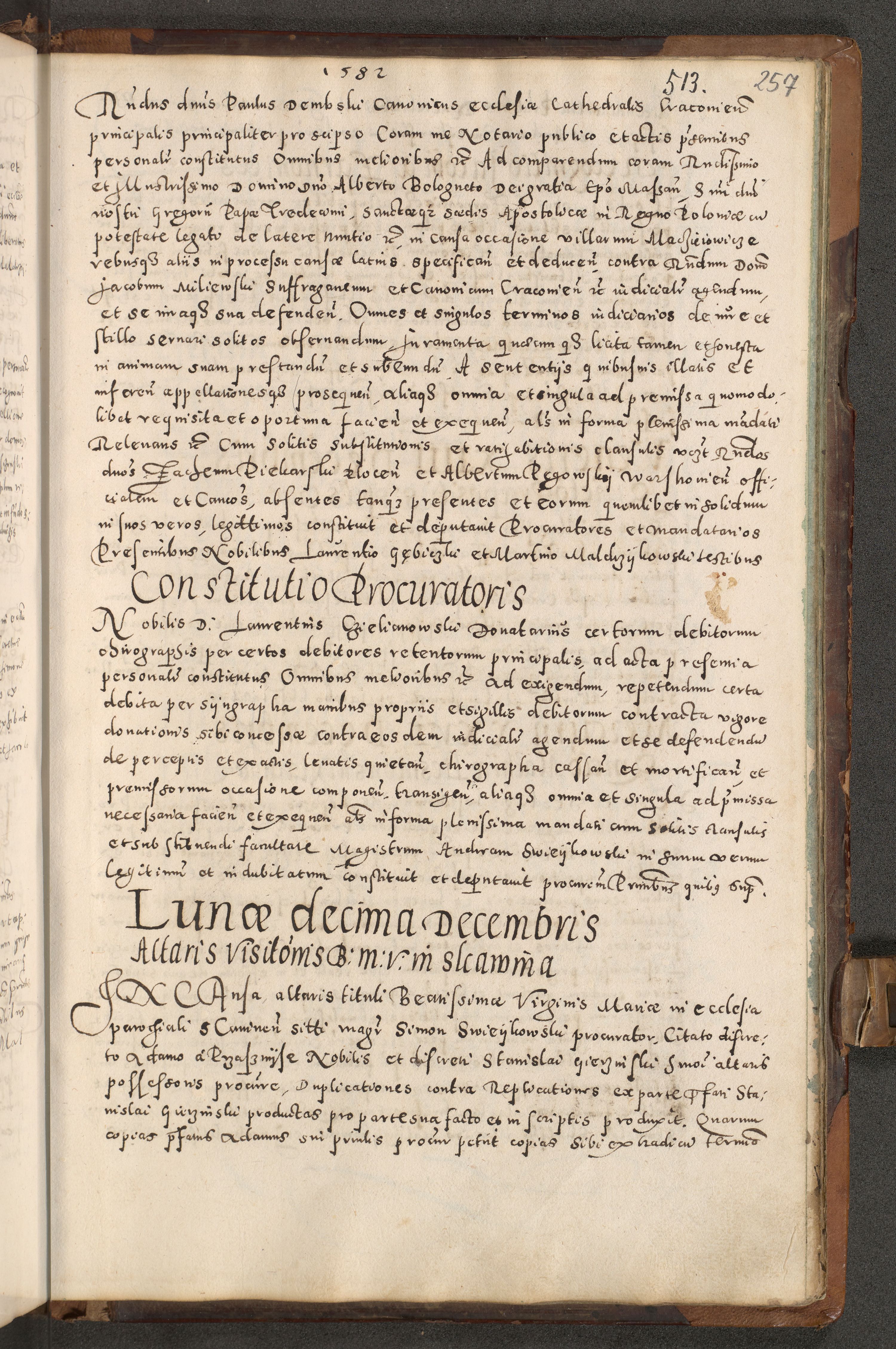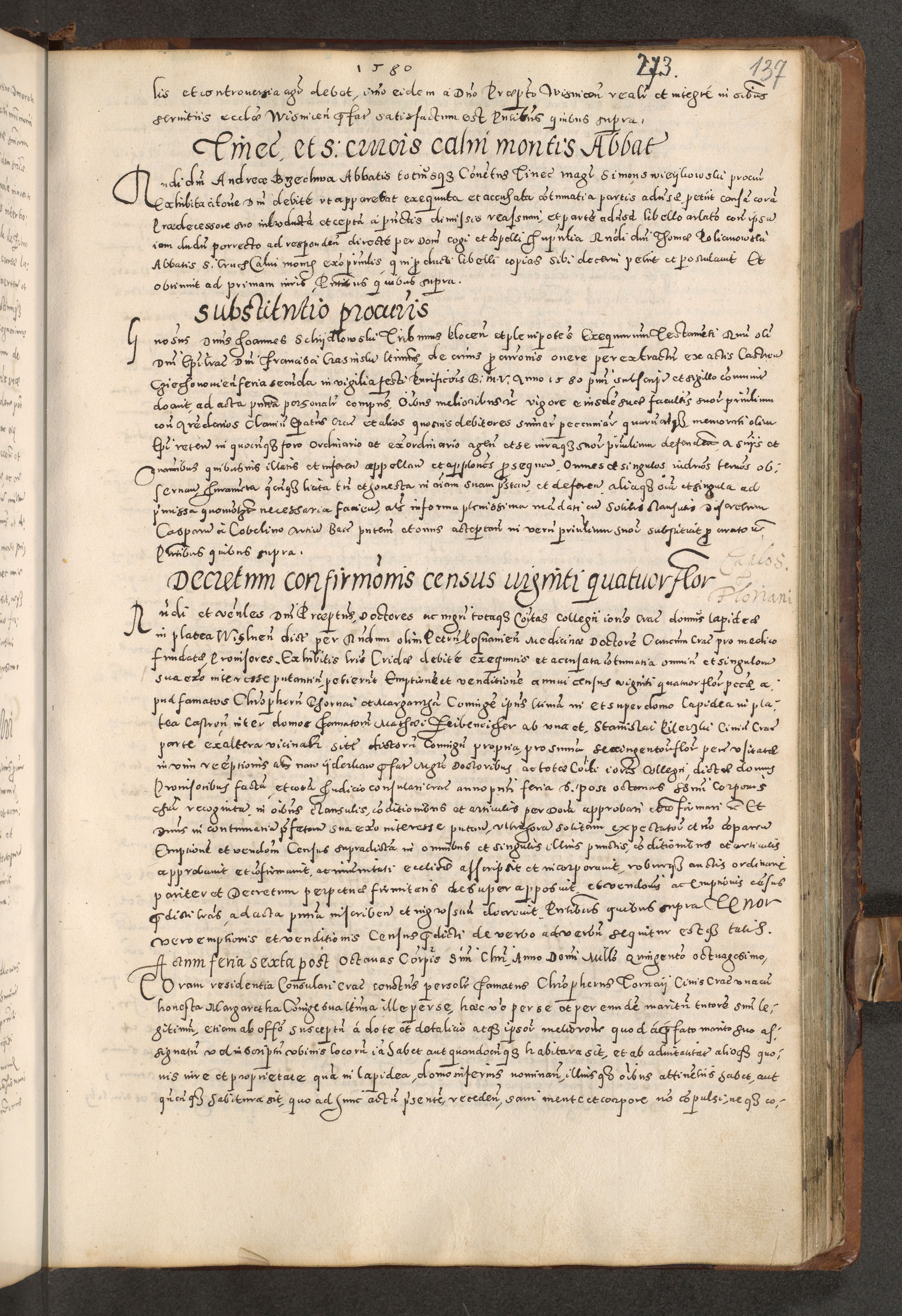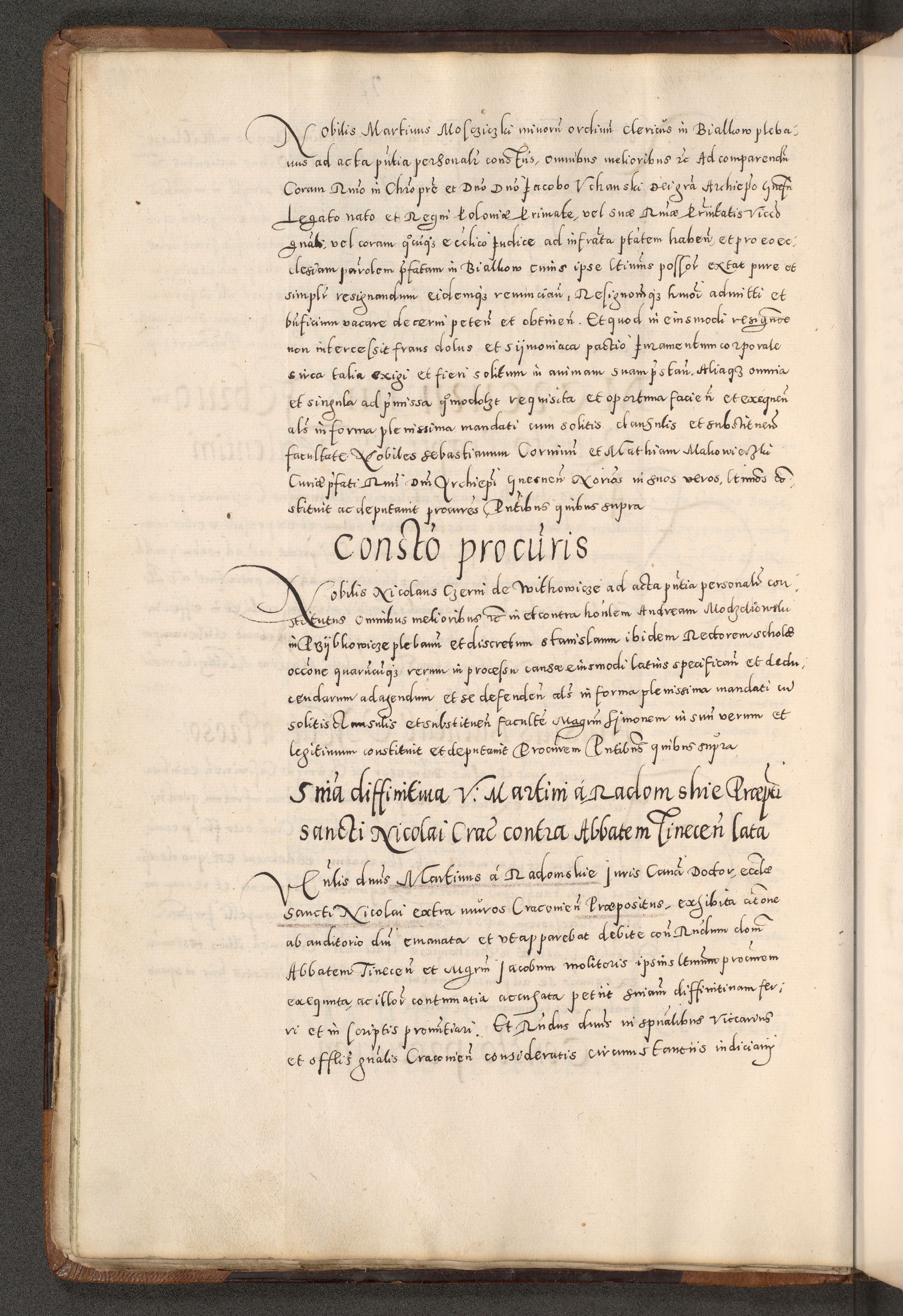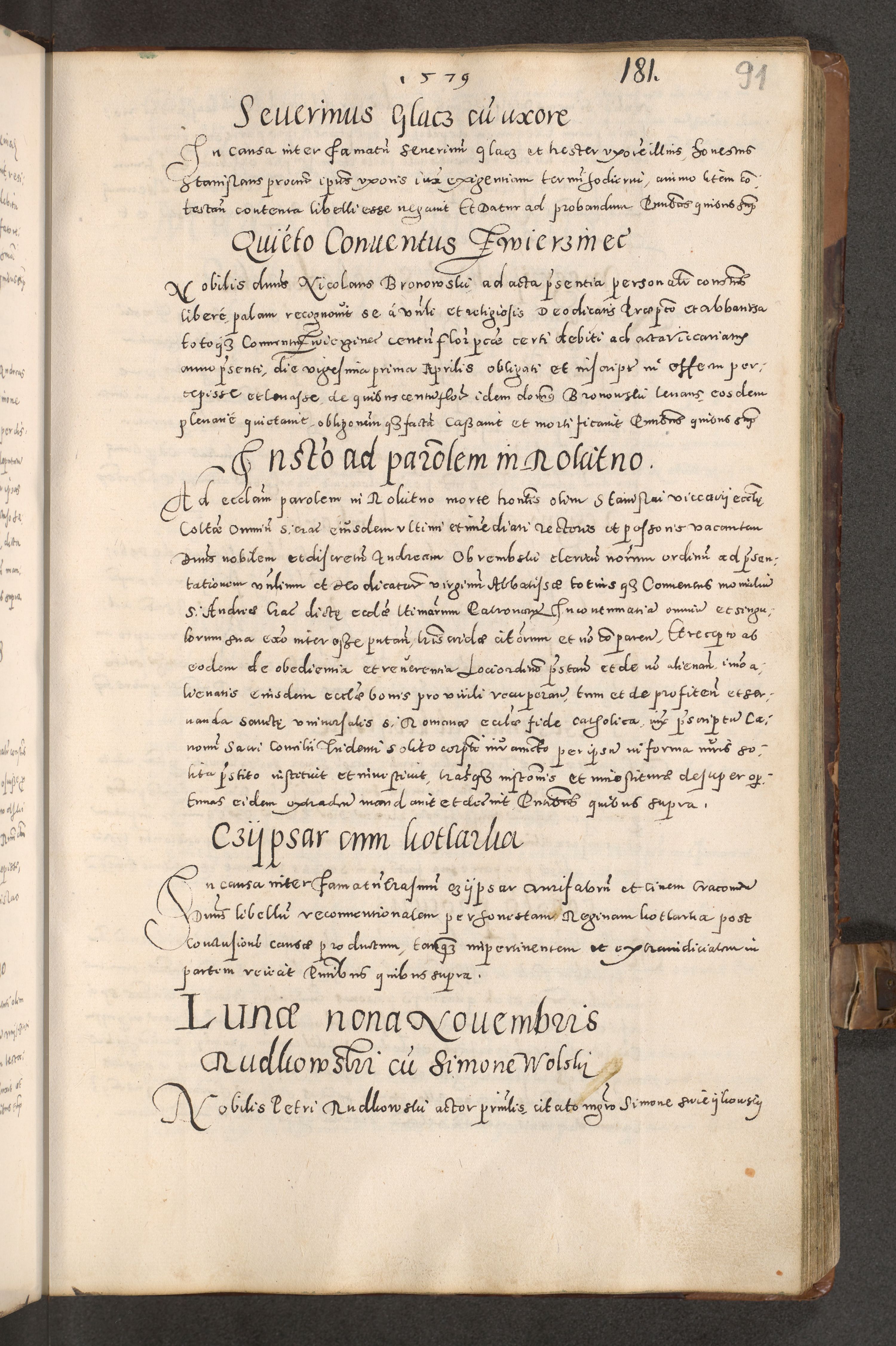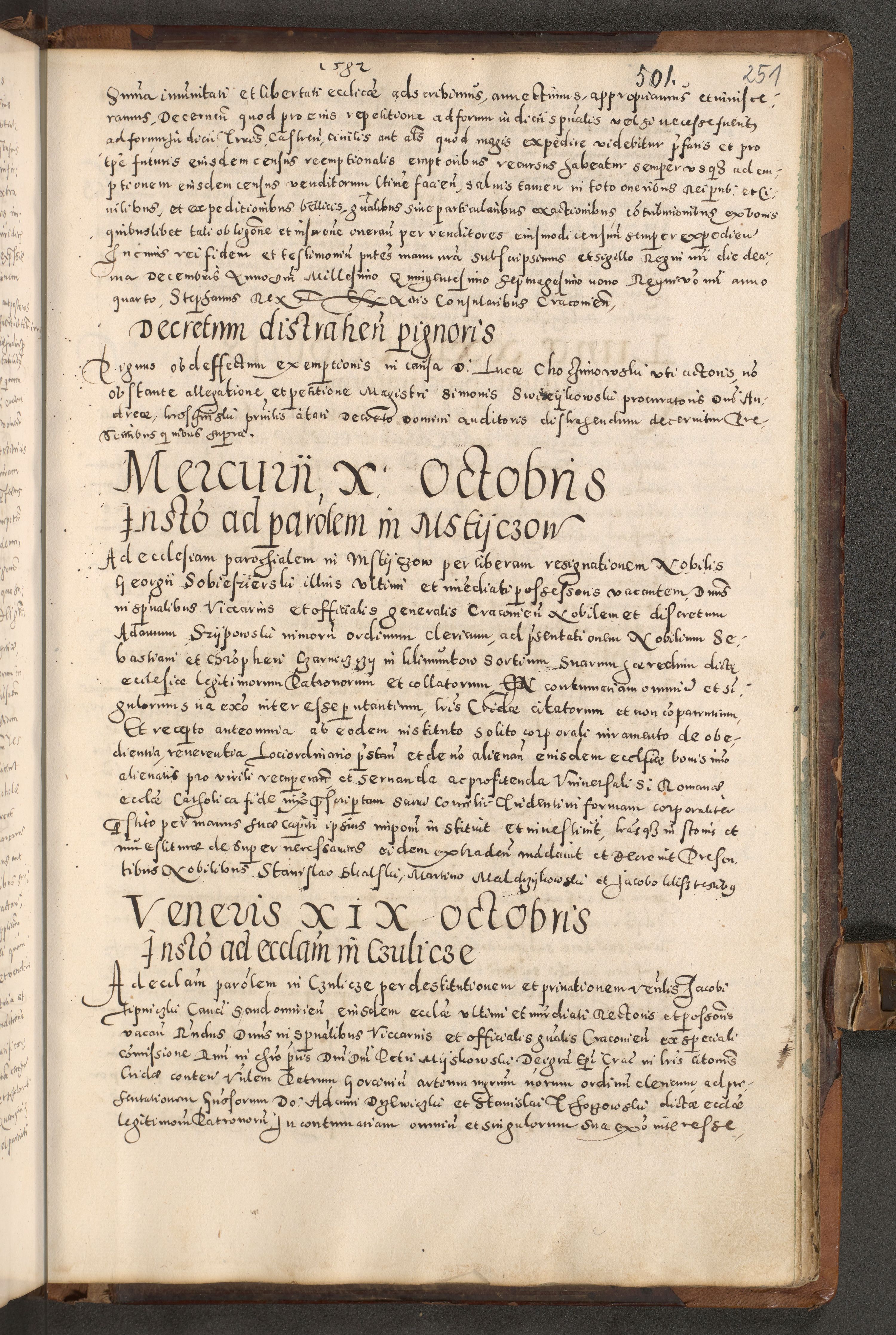 Acta actorum causarum tam diffinitivarum quam interloquutoriarum sententiarum decretorum obligationum quietatorum constuorum pro reverendum coram Reverendo Domino Alberto Nininski Custode Sandecensis Canonico et Archipresbitero Viccarioque in Spiritualibus ac Officiali Generali Cracoviensis ad Annum Domini Millesimum Qumgentesimum Septuagentesimum Nonum cuius Judictio septima Pontificat SS. nostri Domini Gregory pp. tredecimi Anno septimo inchoantur faliciter